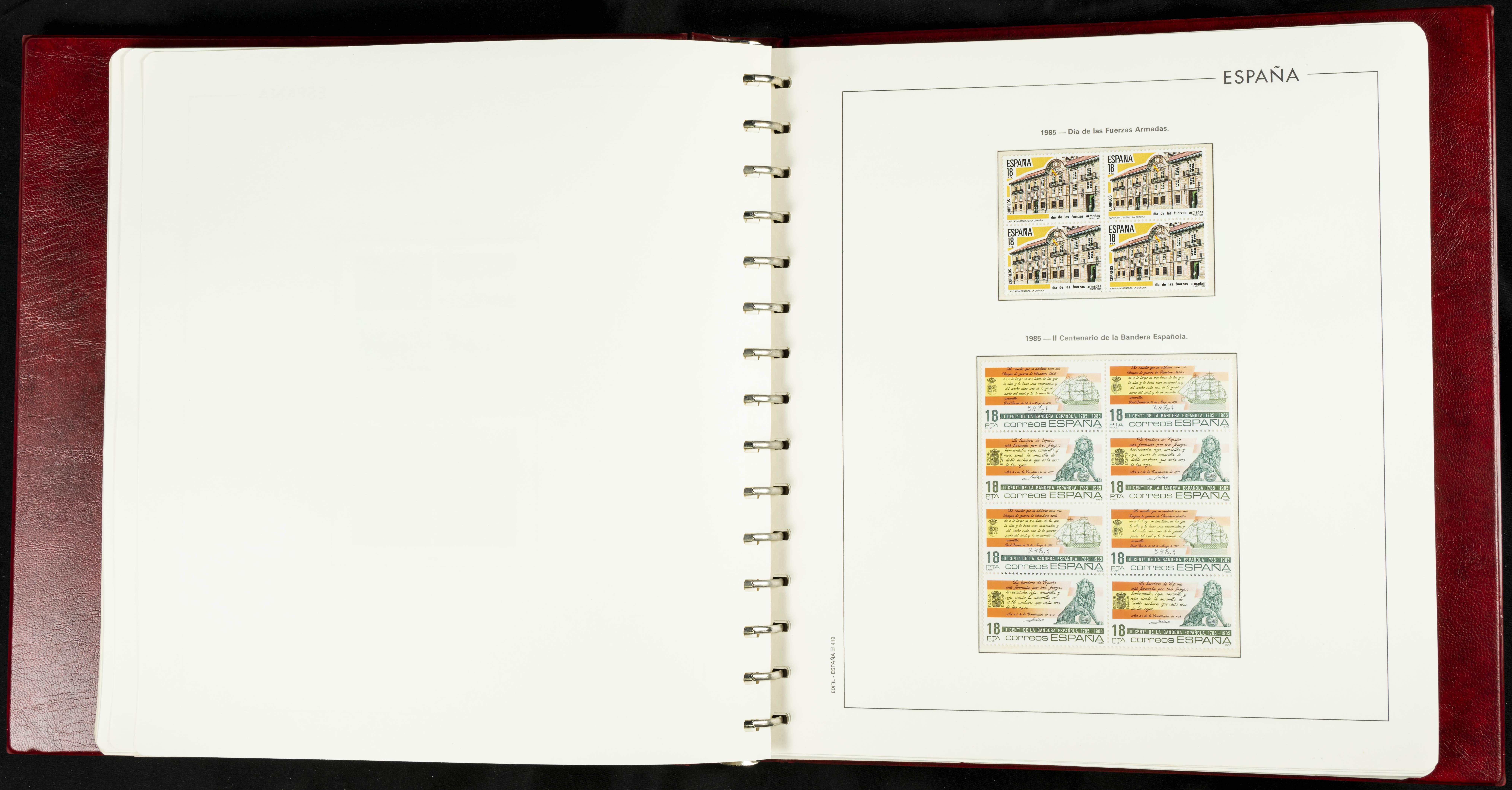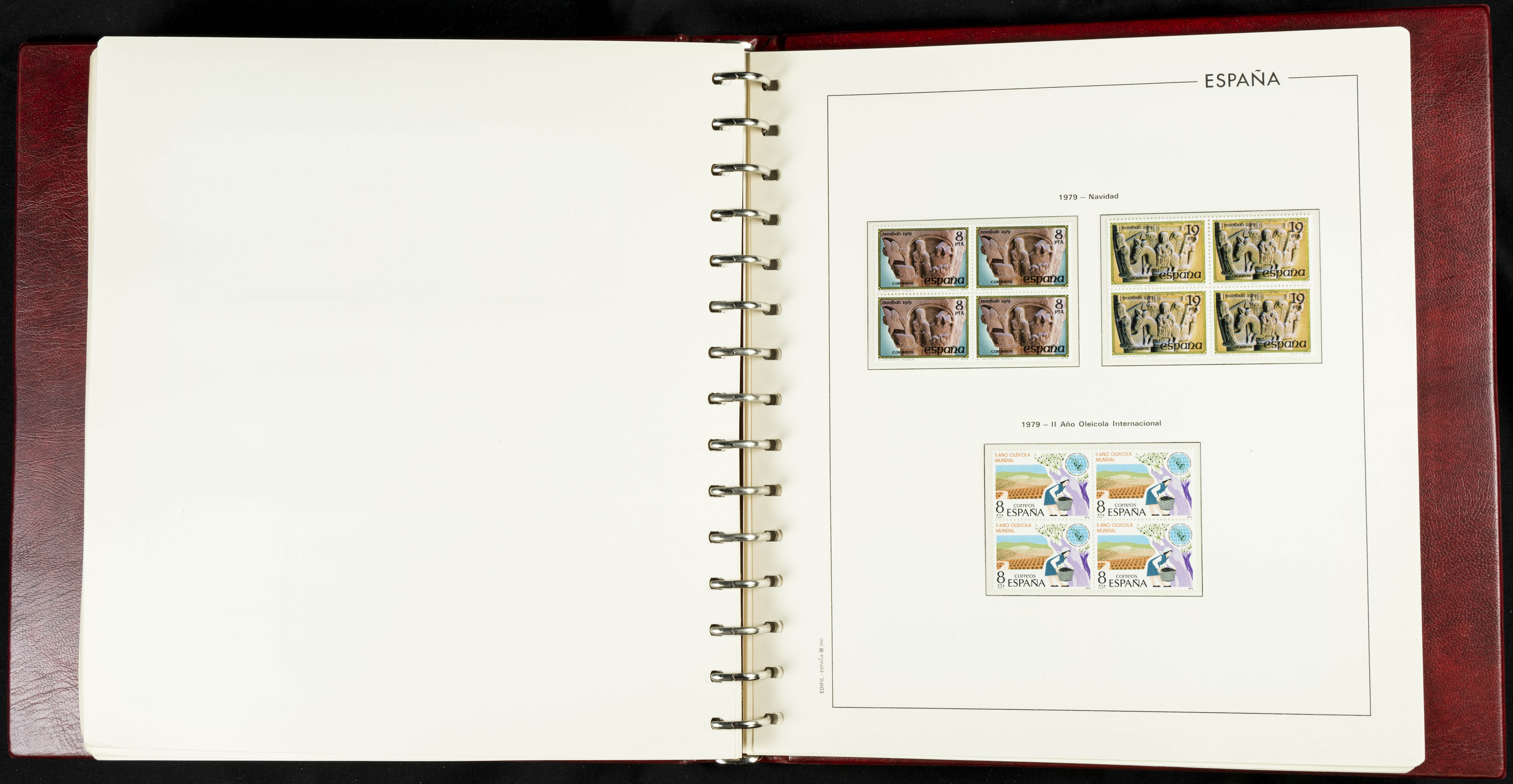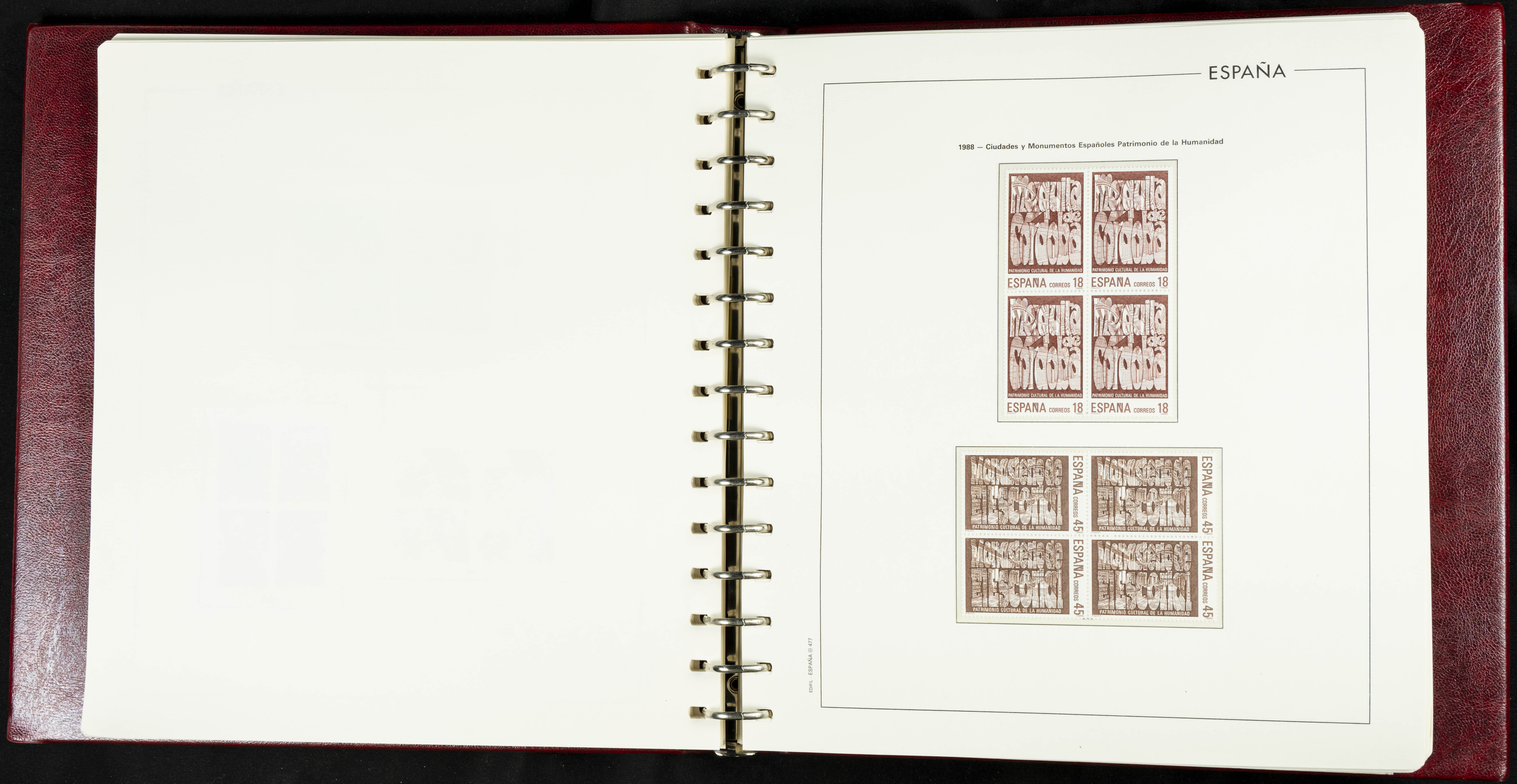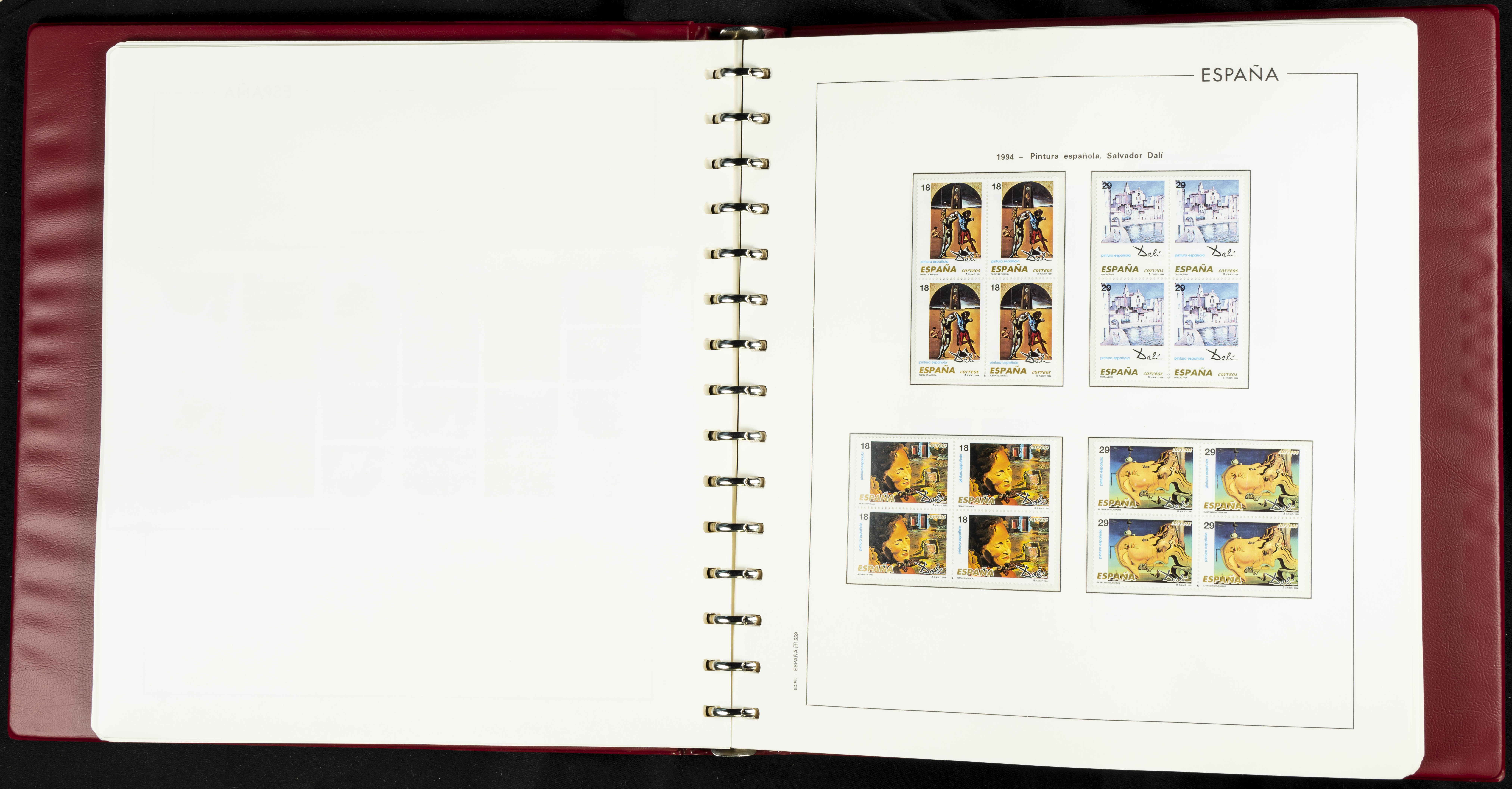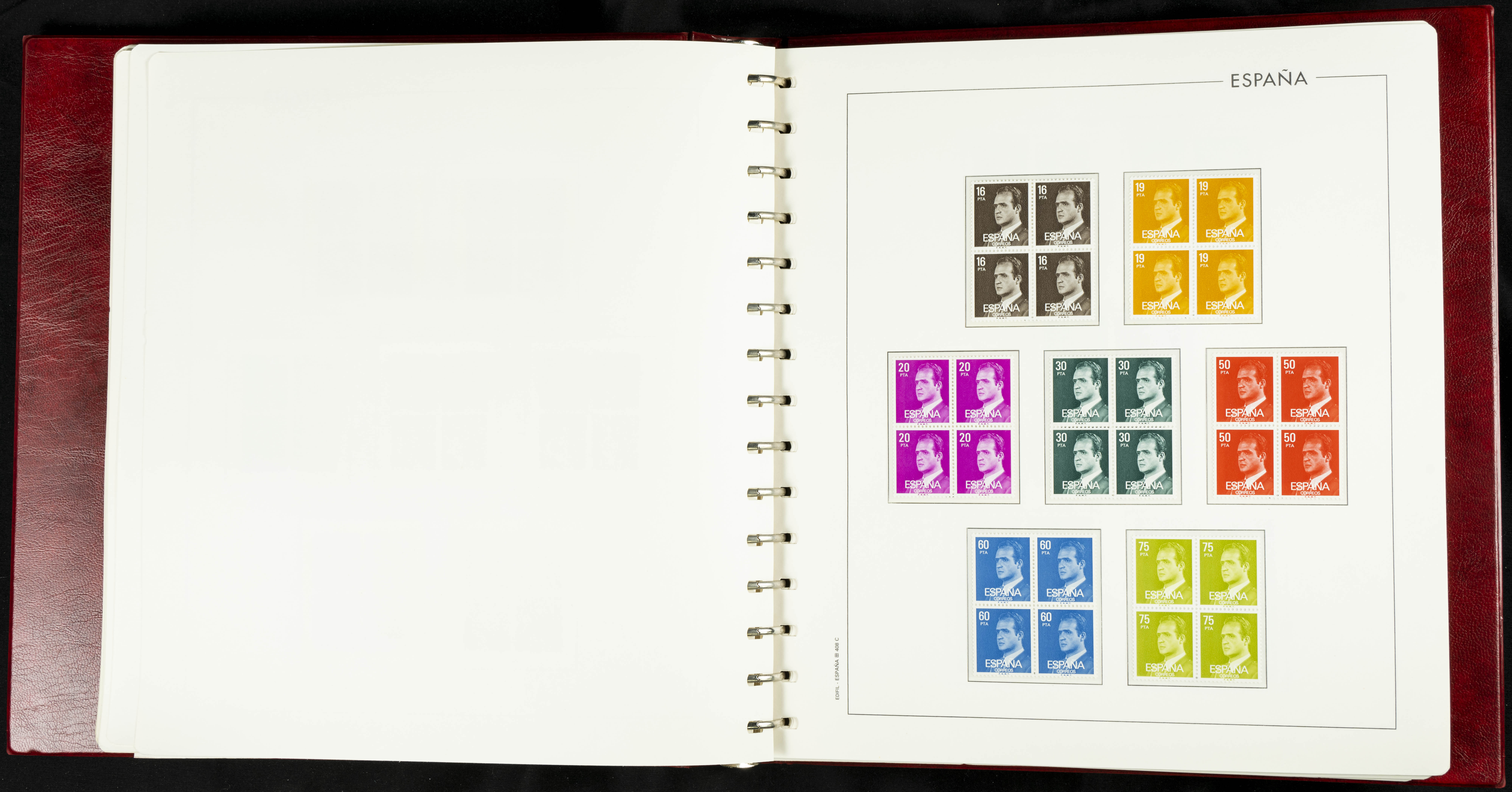 ★★(1976ca). Complete collection between 1976 and 1999, including the 2000 portion denominated exclusively in pesetas, in blocks of four (with a souvenir sheet), in mint condition (mounted in albums). HIGH CATALOGUE VALUE. TO BE EXAMINED.