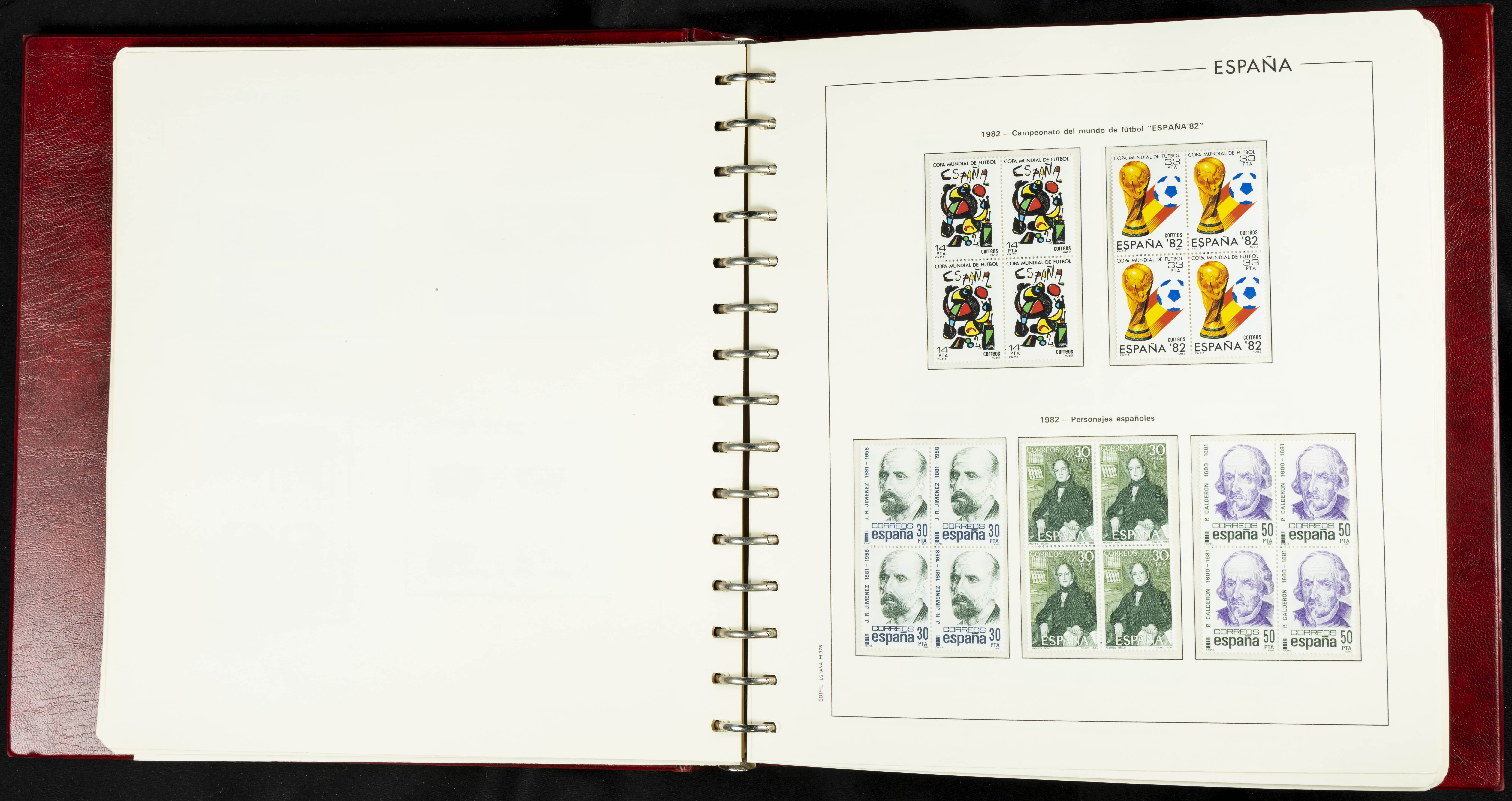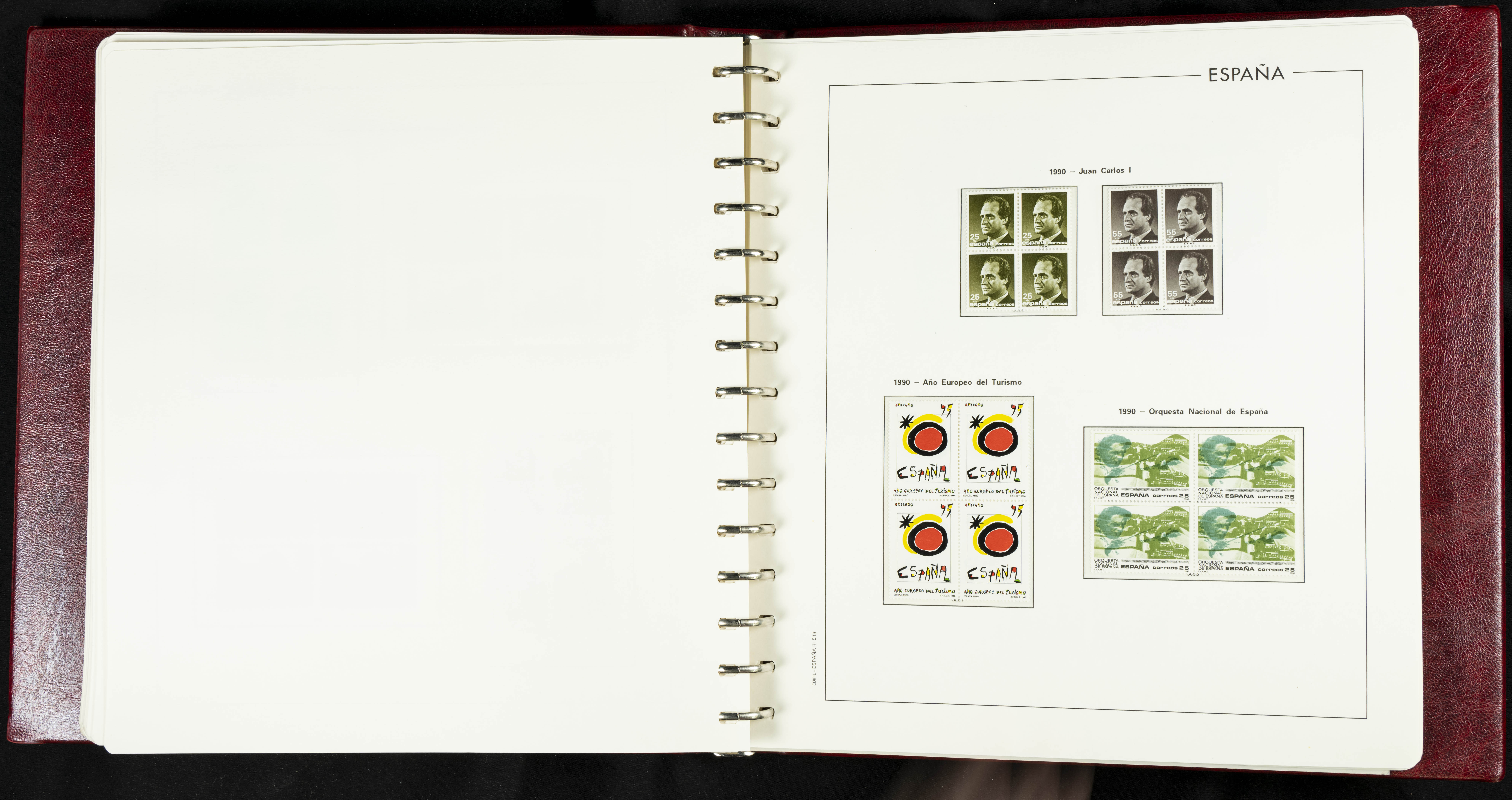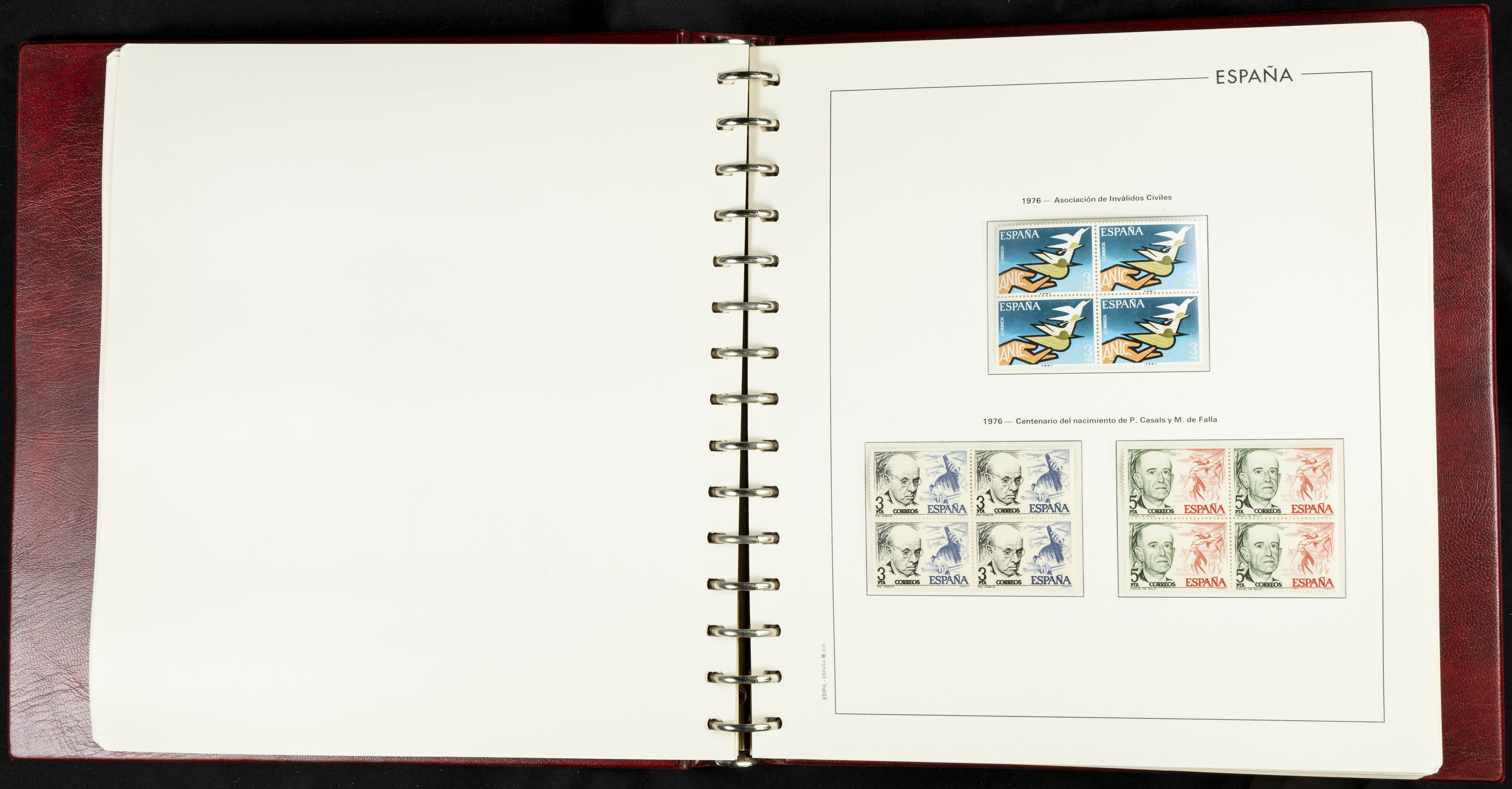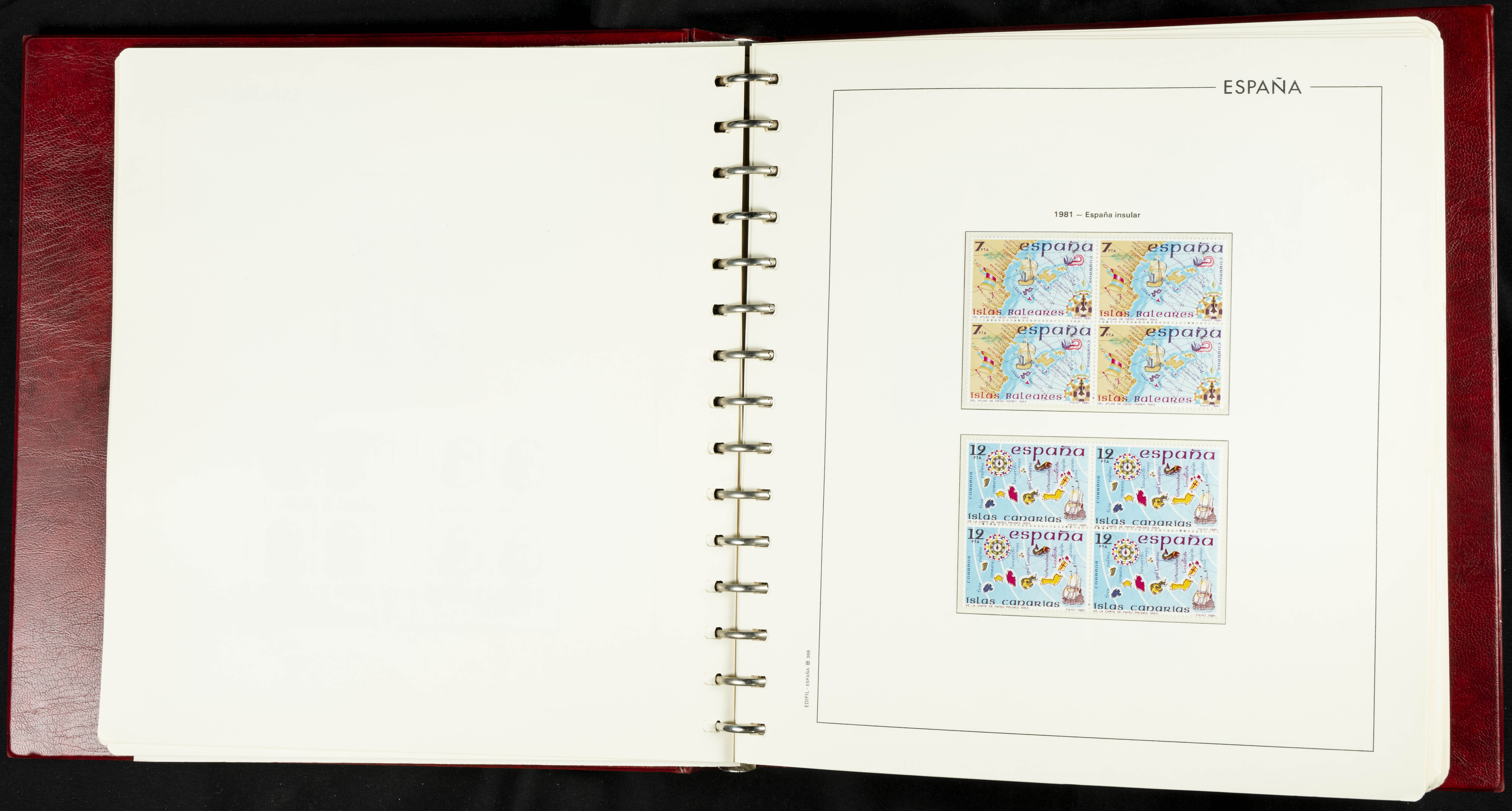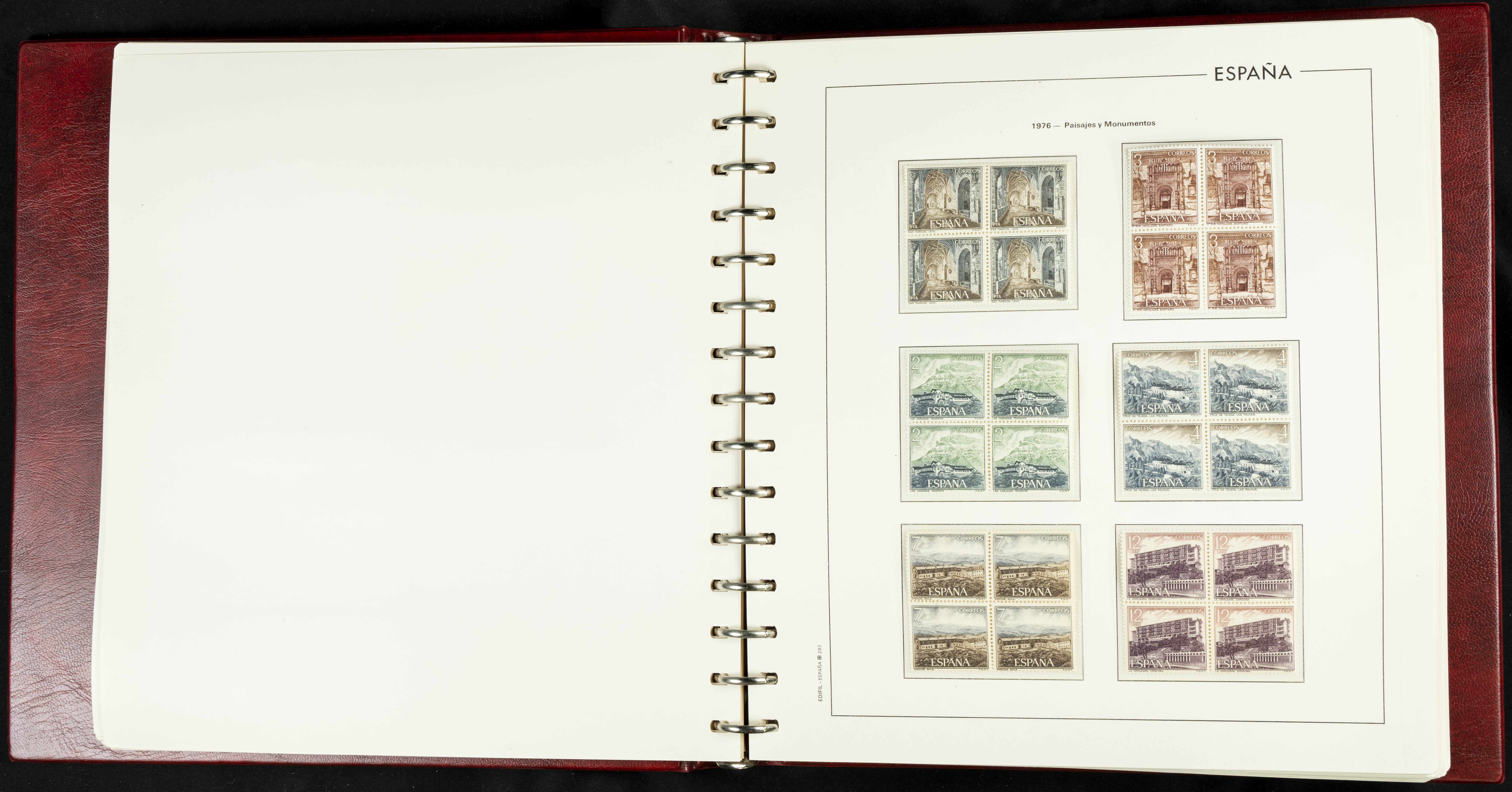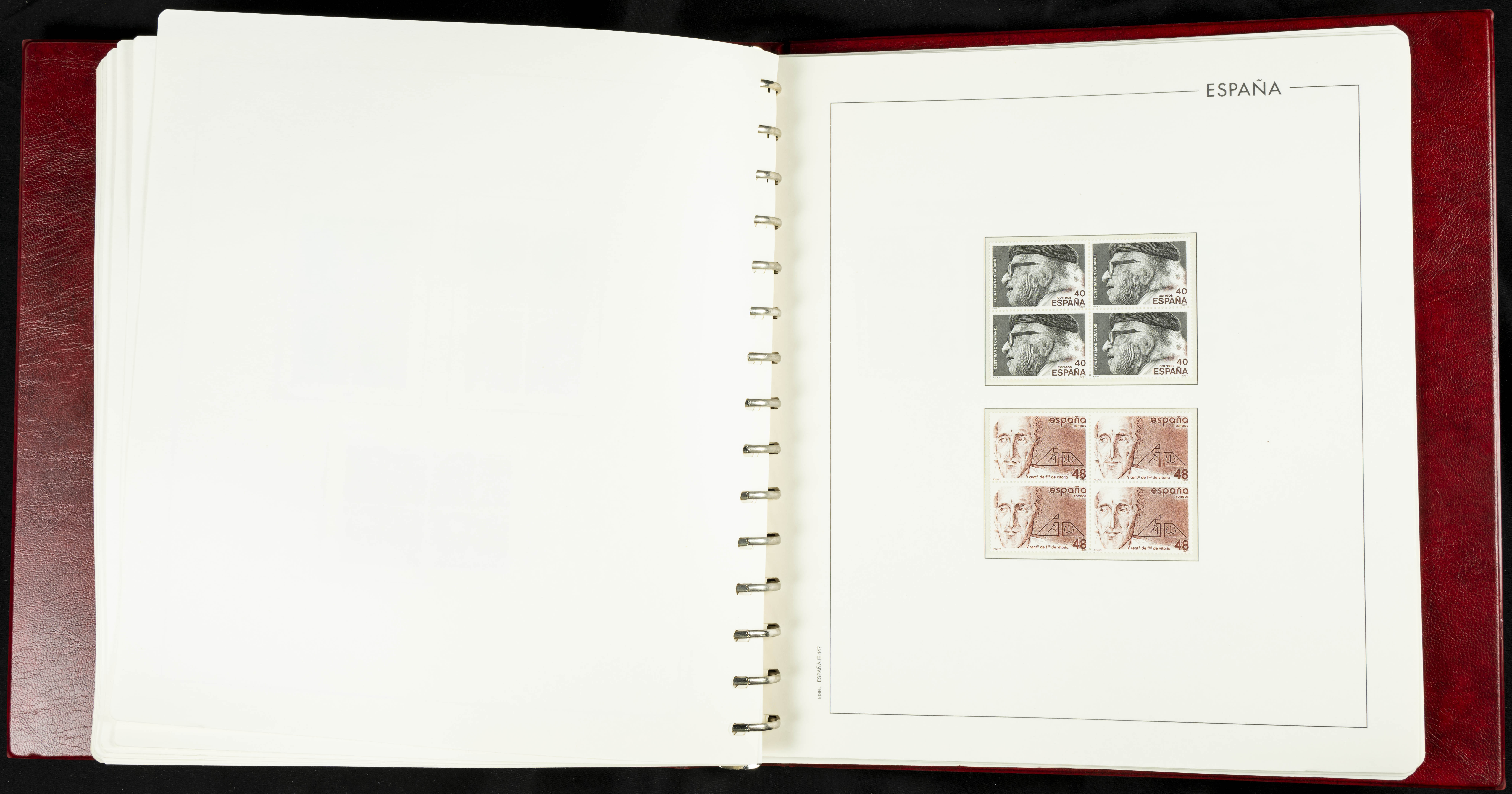 ★★(1976ca). Complete collection between 1976 and 1999, including the 2000 portion denominated exclusively in pesetas, in blocks of four (with a souvenir sheet), in mint condition (mounted in albums). HIGH CATALOGUE VALUE. TO BE EXAMINED.