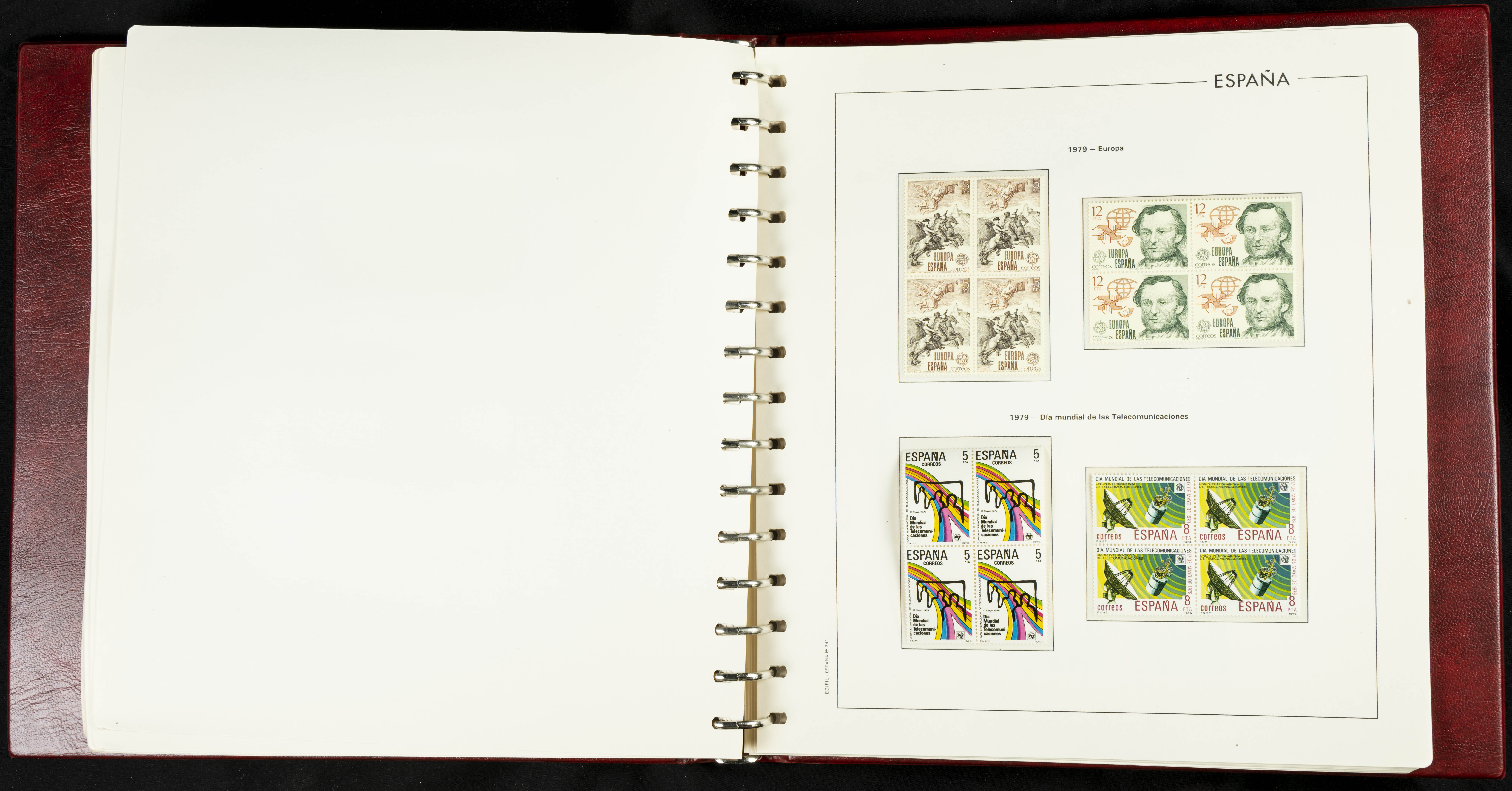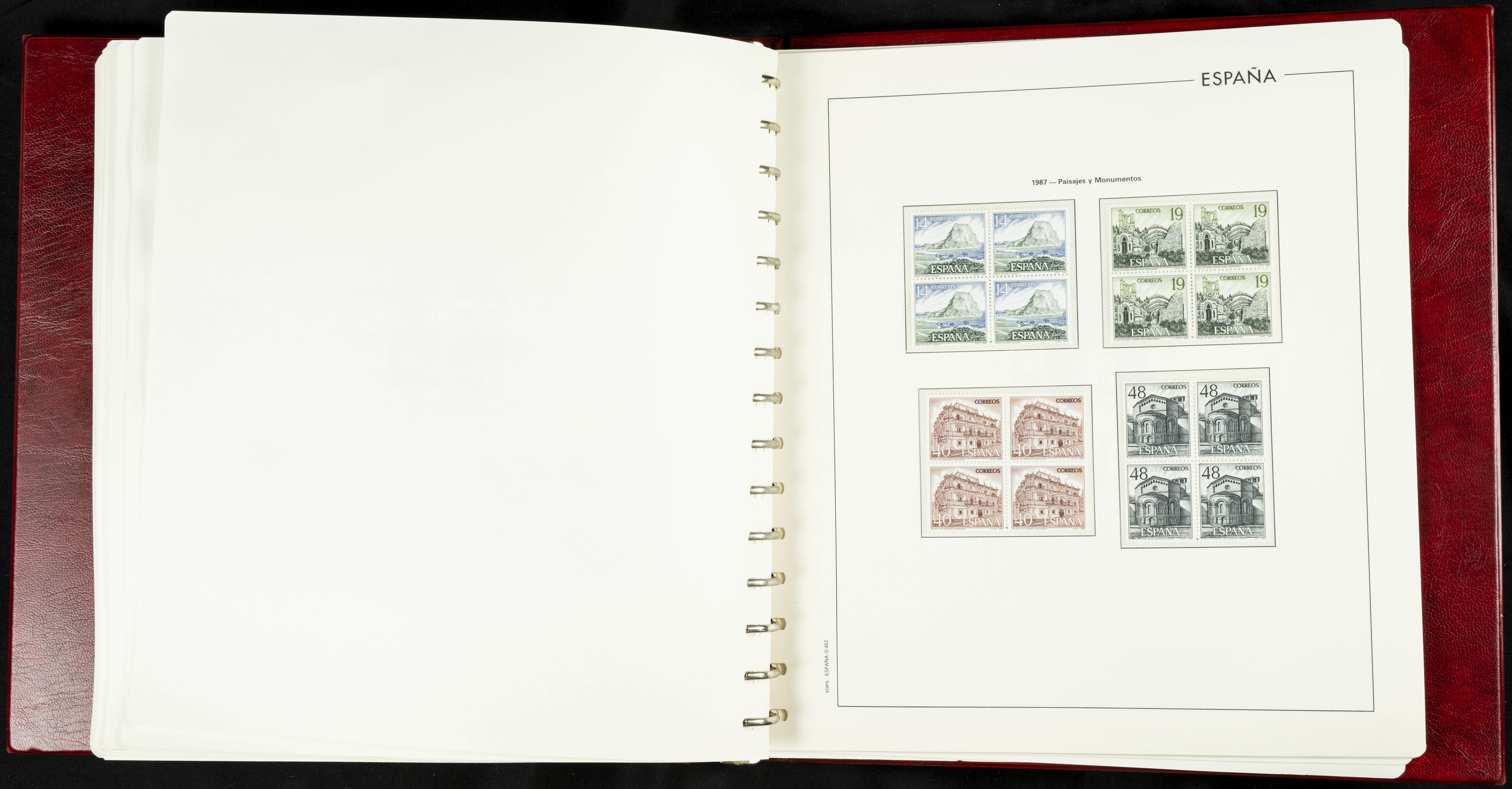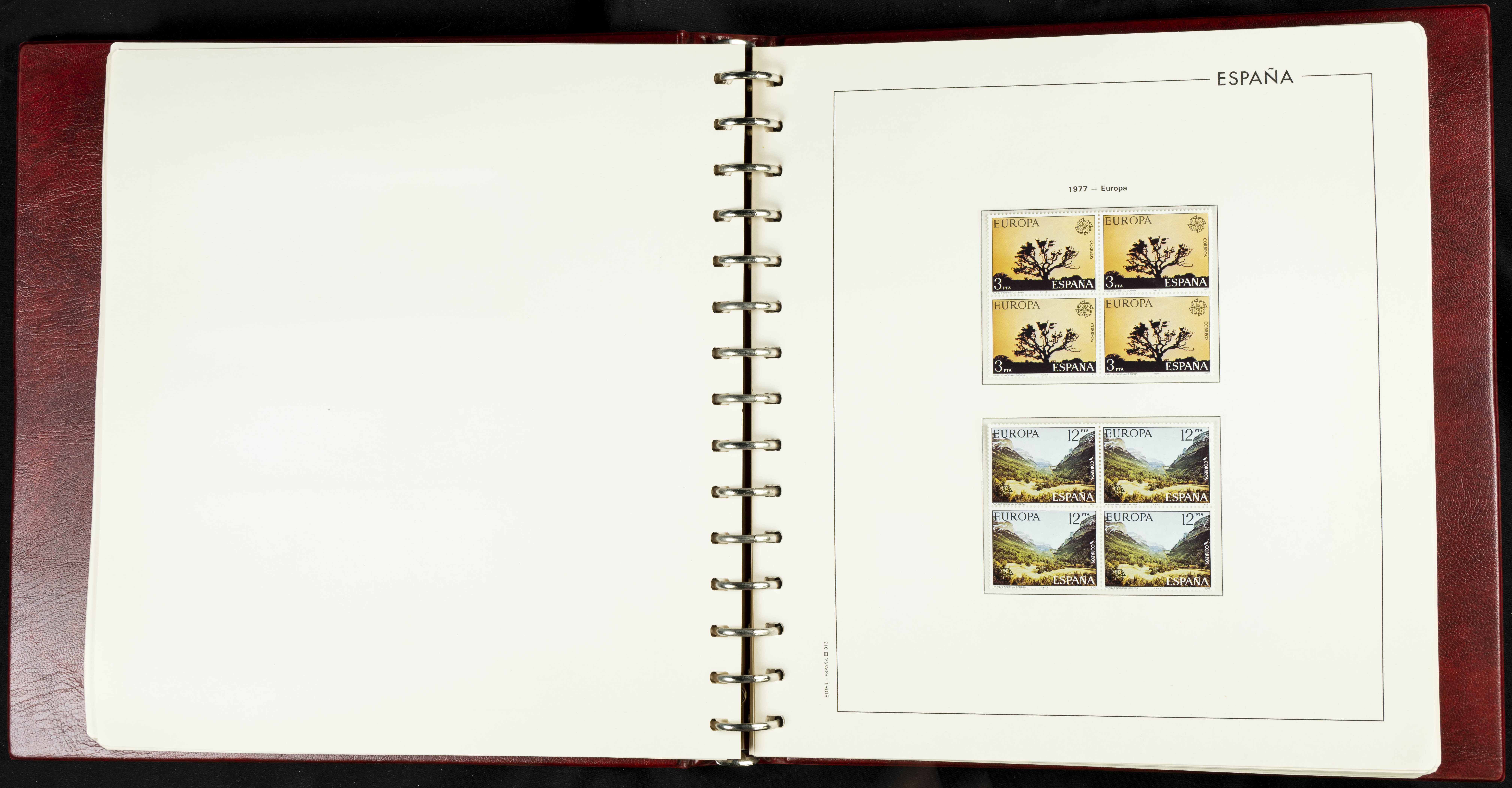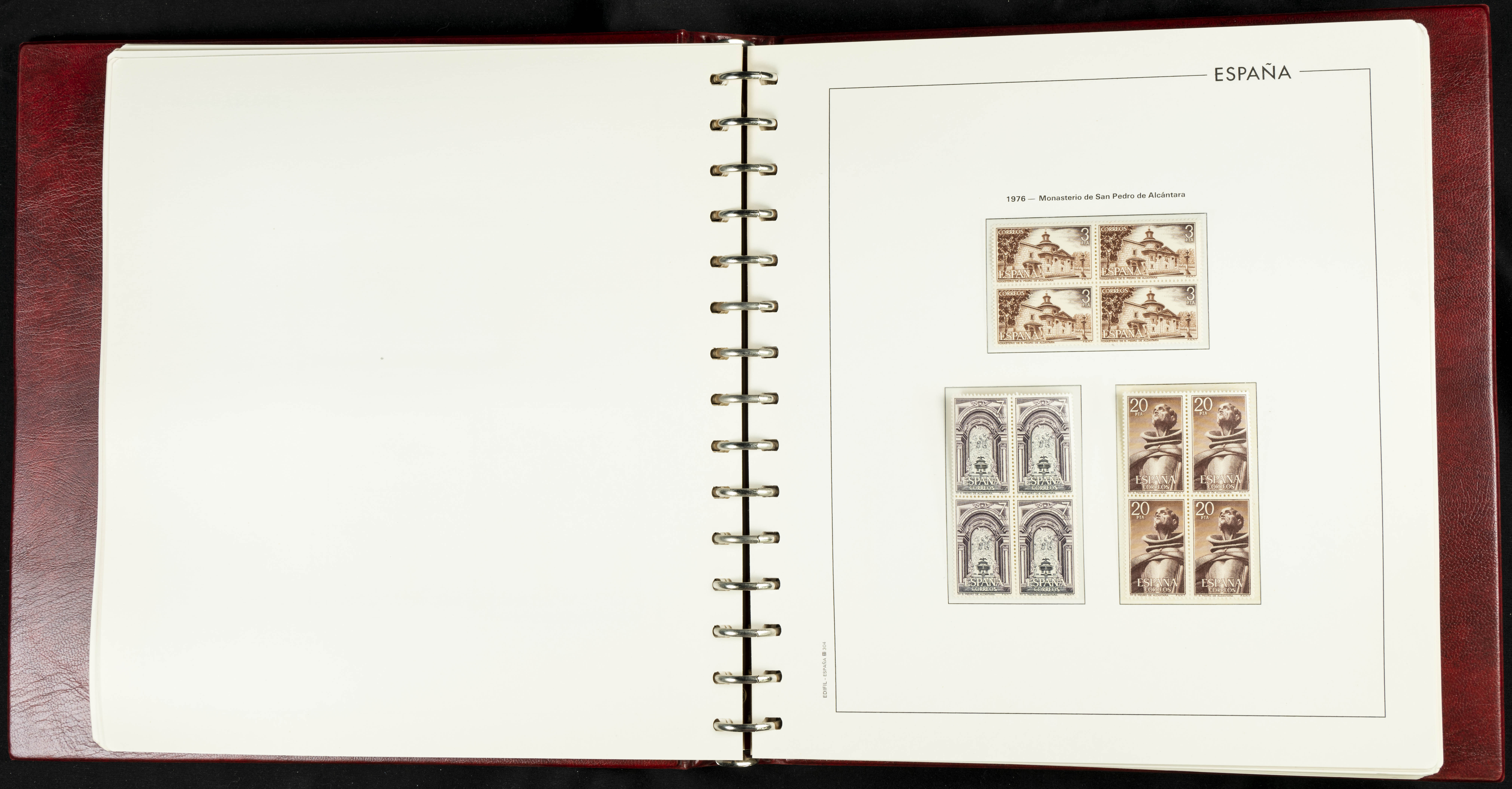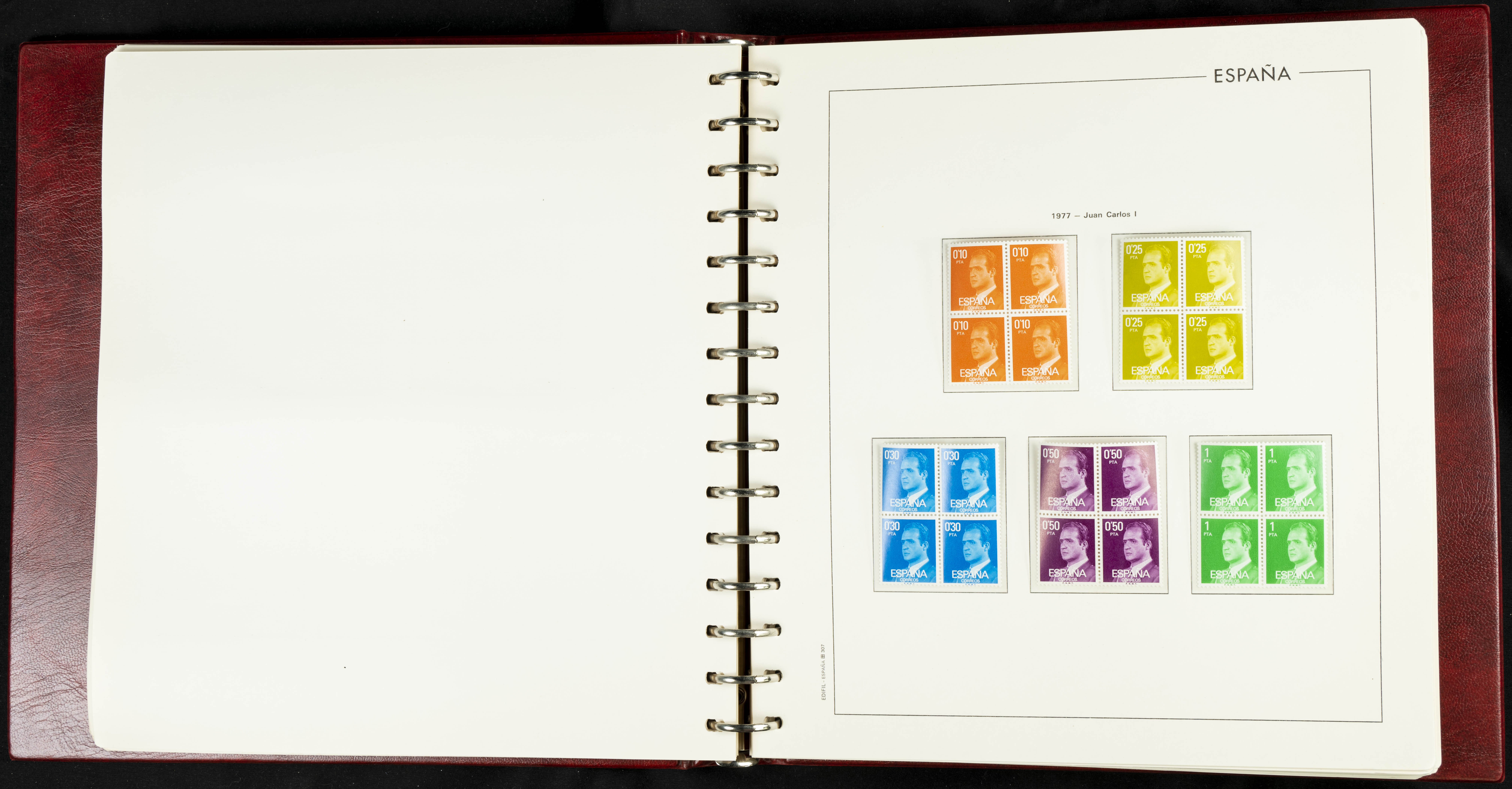 ★★(1976ca). Complete collection between 1976 and 1999, including the 2000 portion denominated exclusively in pesetas, in blocks of four (with a souvenir sheet), in mint condition (mounted in albums). HIGH CATALOGUE VALUE. TO BE EXAMINED.