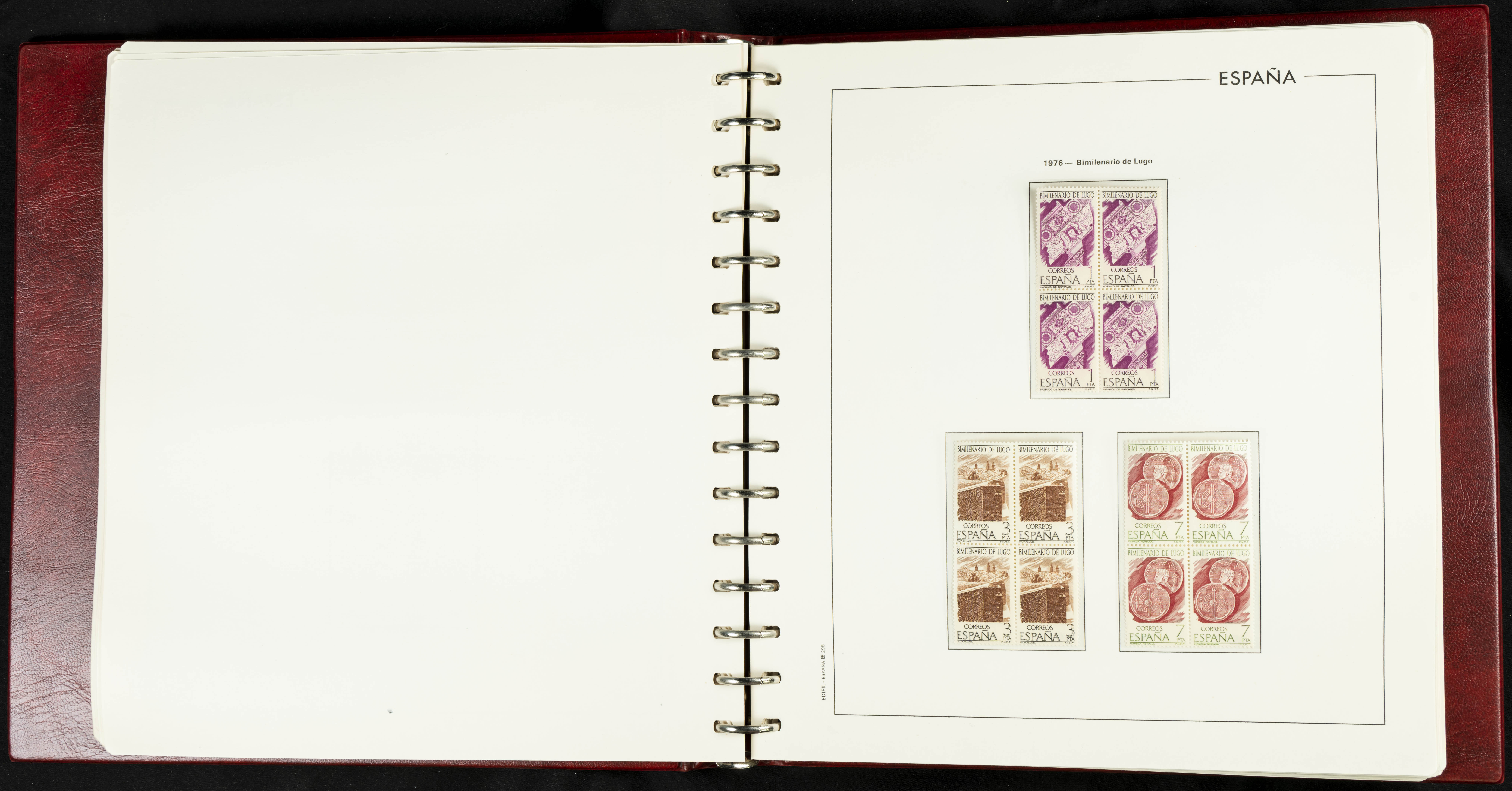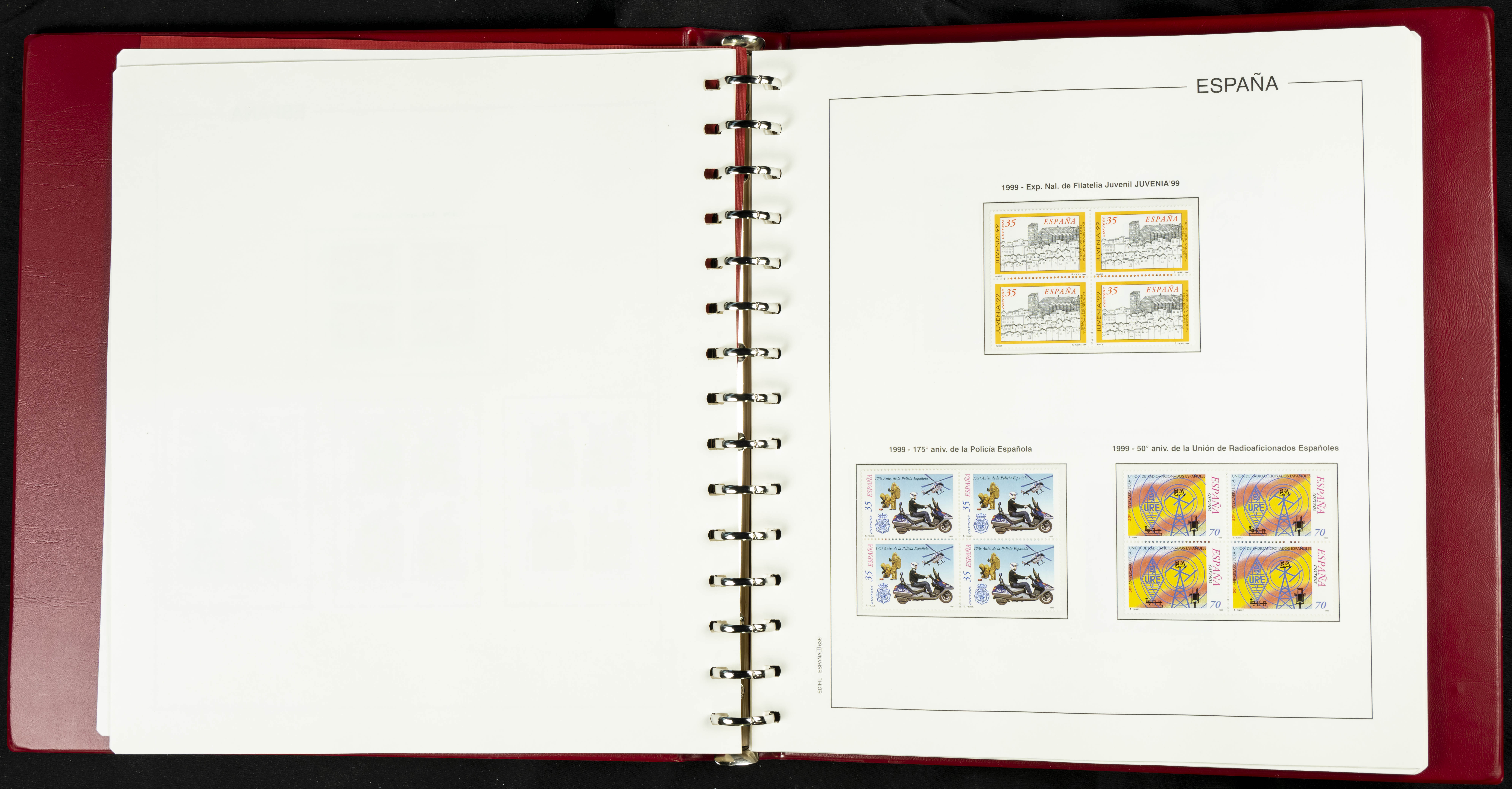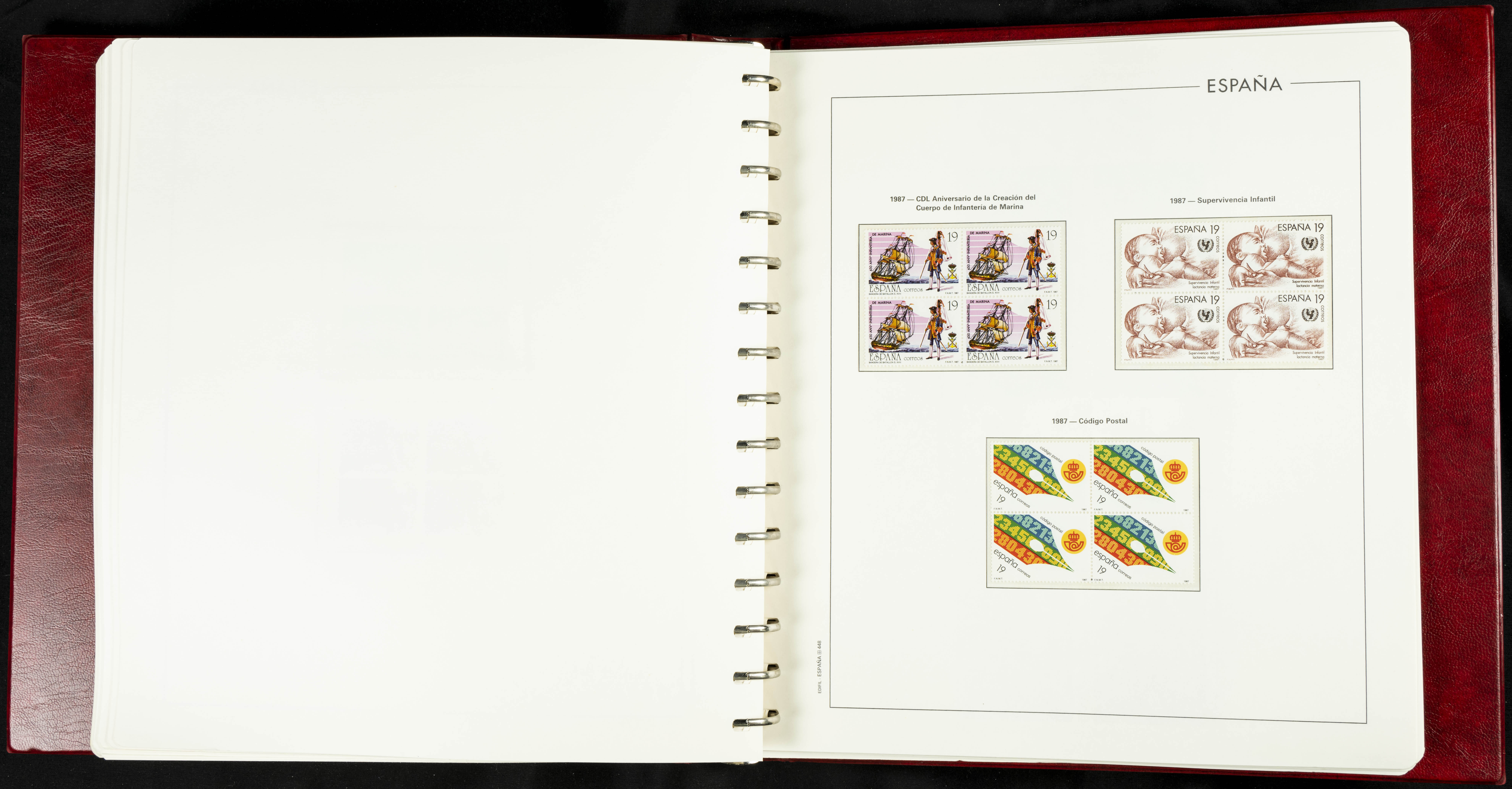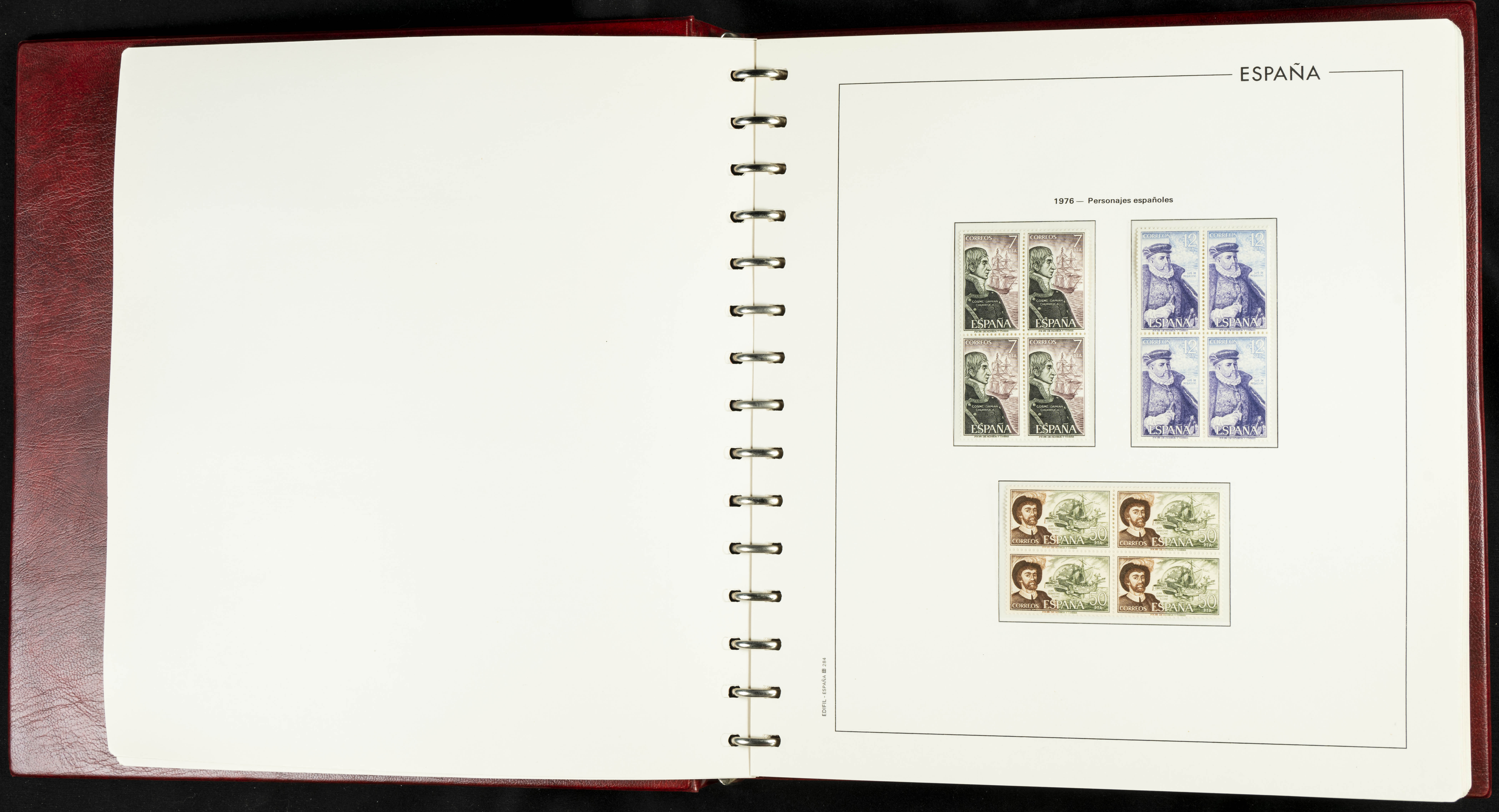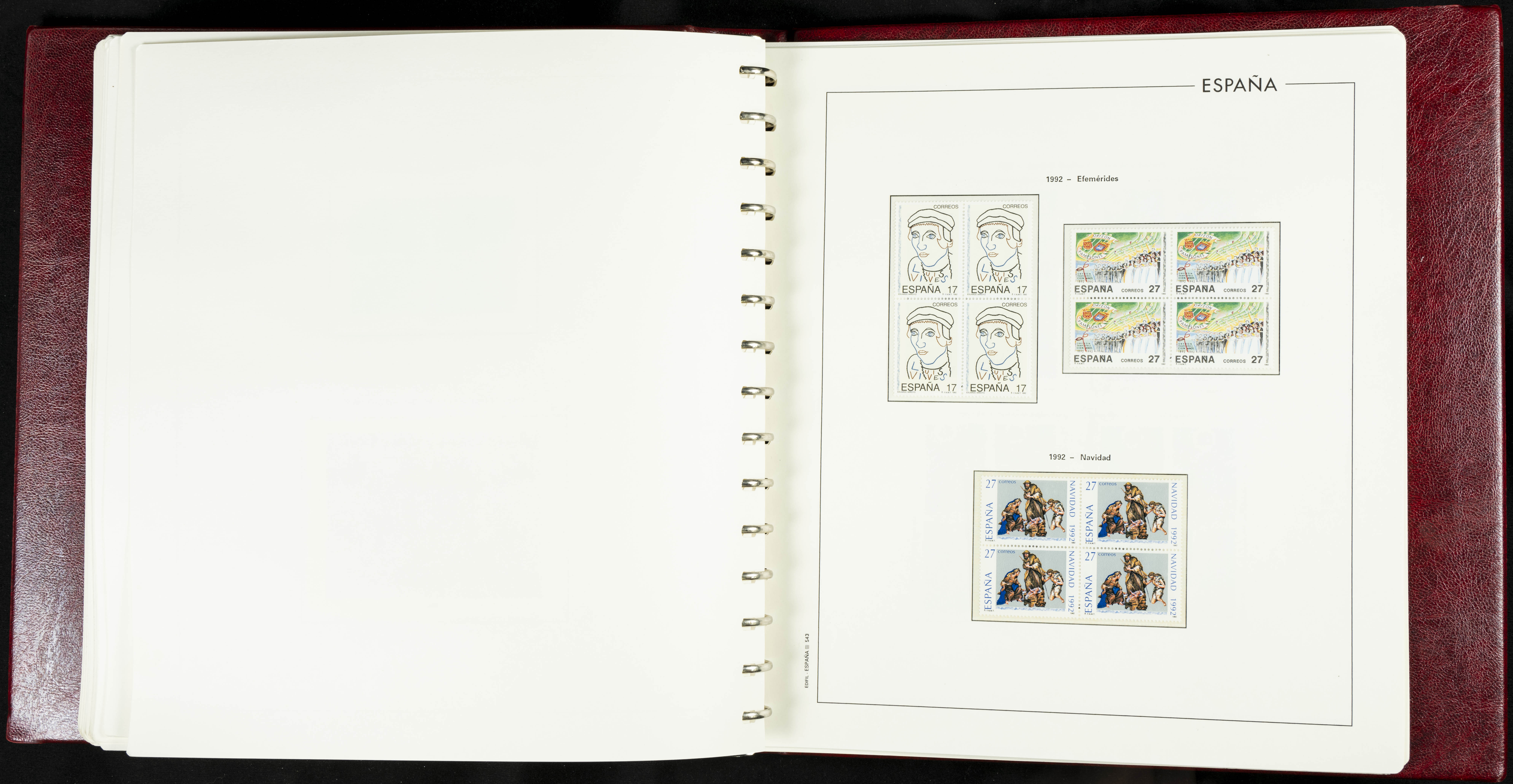 ★★(1976ca). Complete collection between 1976 and 1999, including the 2000 portion denominated exclusively in pesetas, in blocks of four (with a souvenir sheet), in mint condition (mounted in albums). HIGH CATALOGUE VALUE. TO BE EXAMINED.