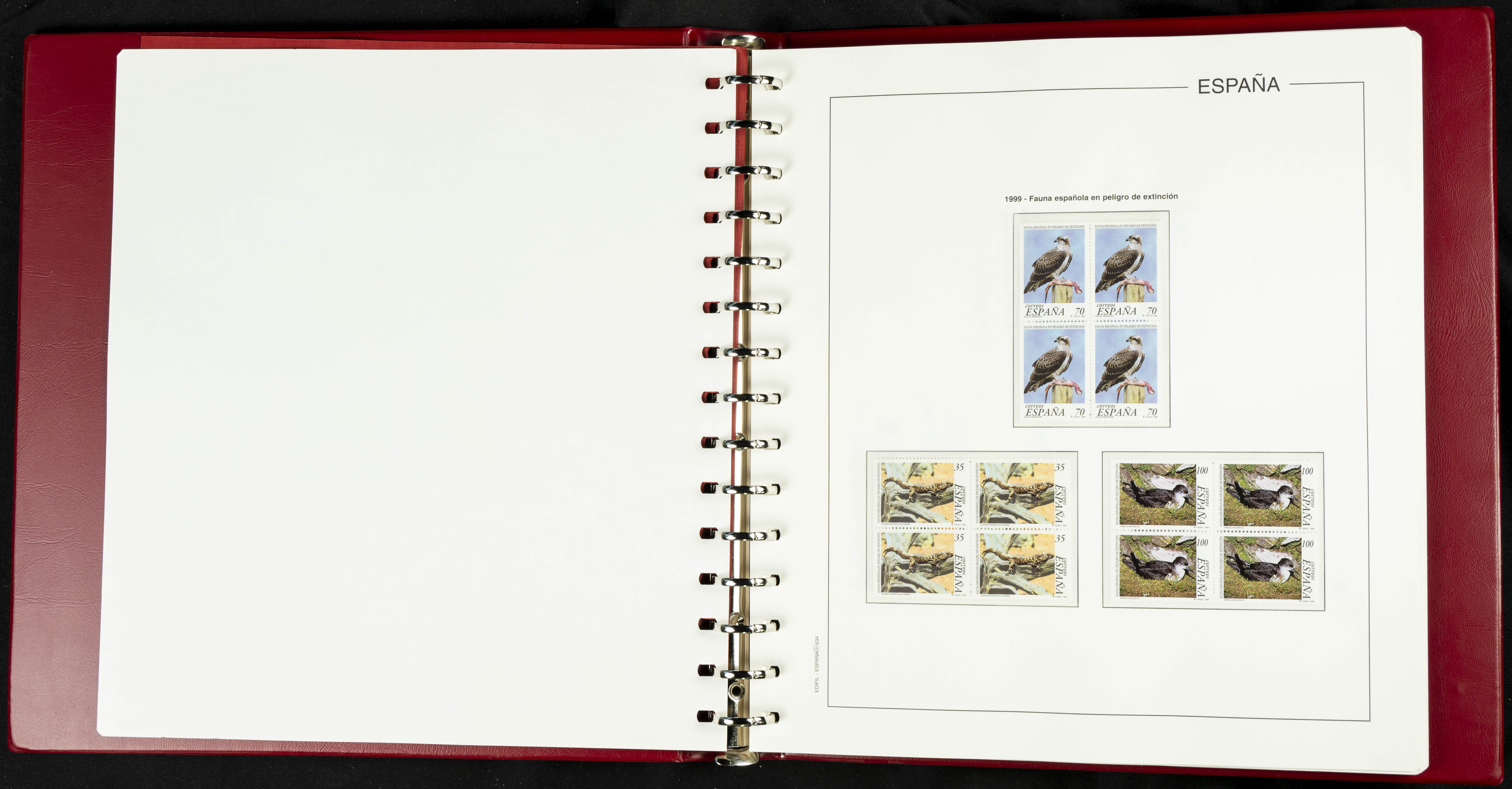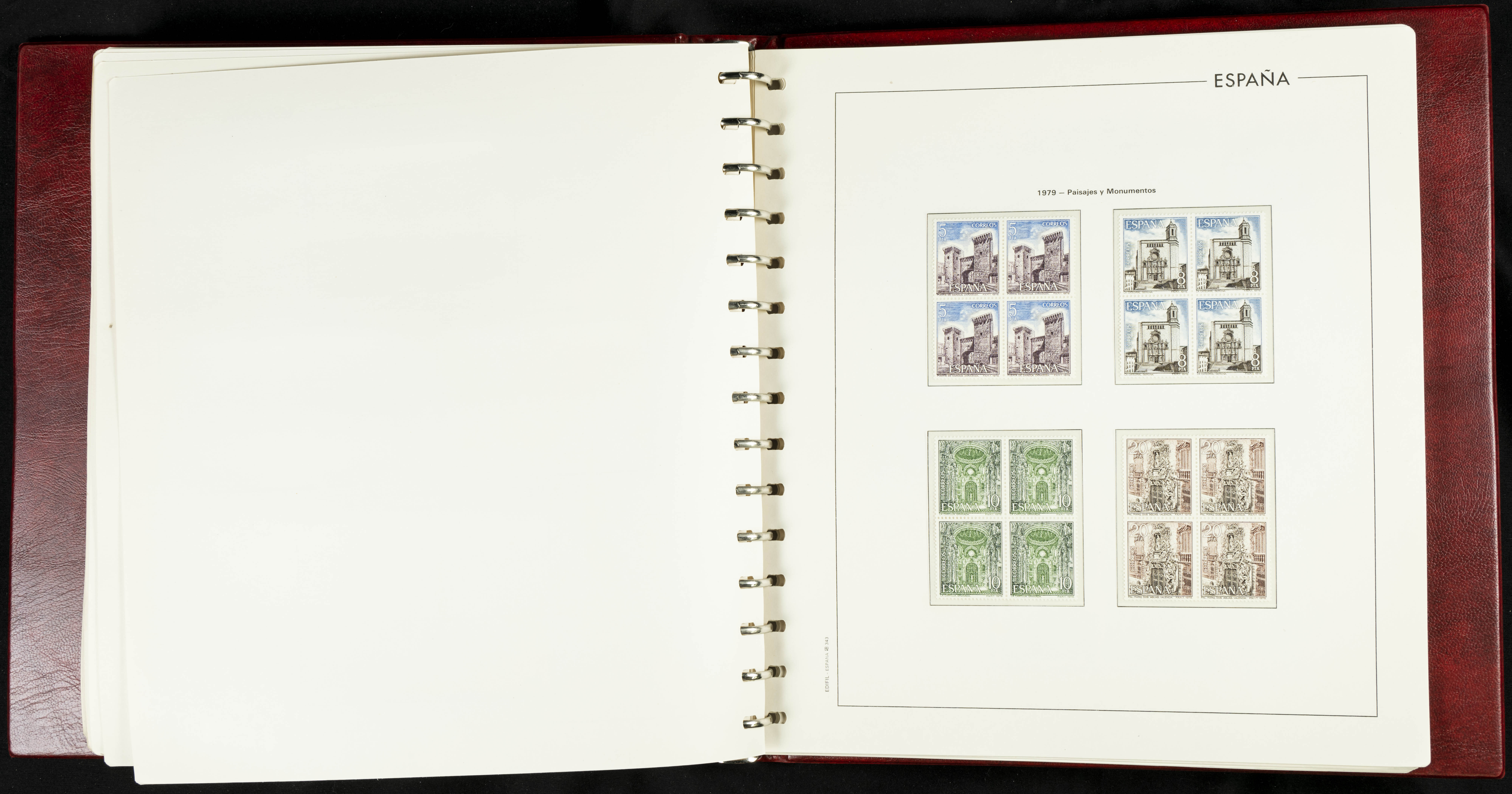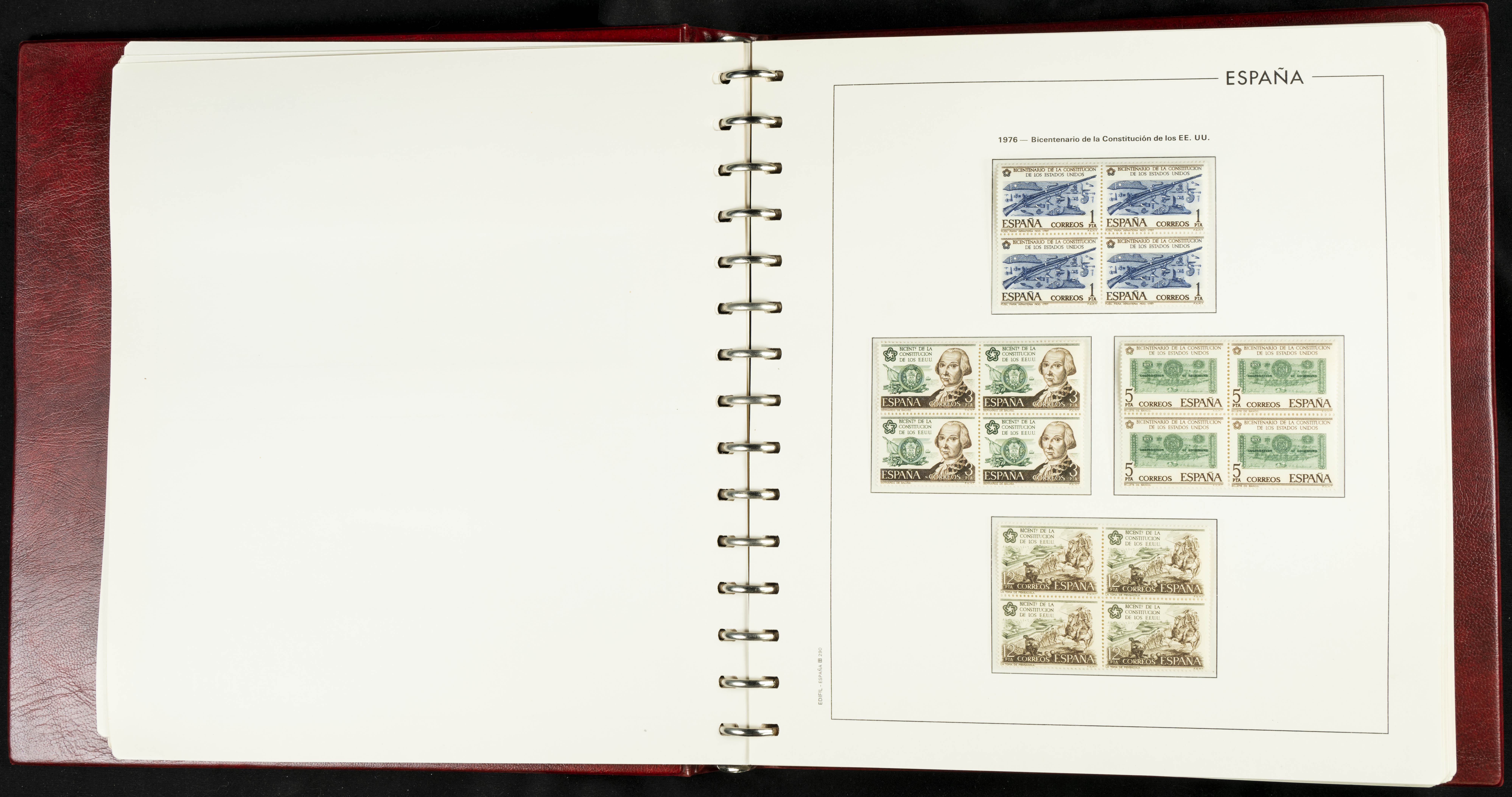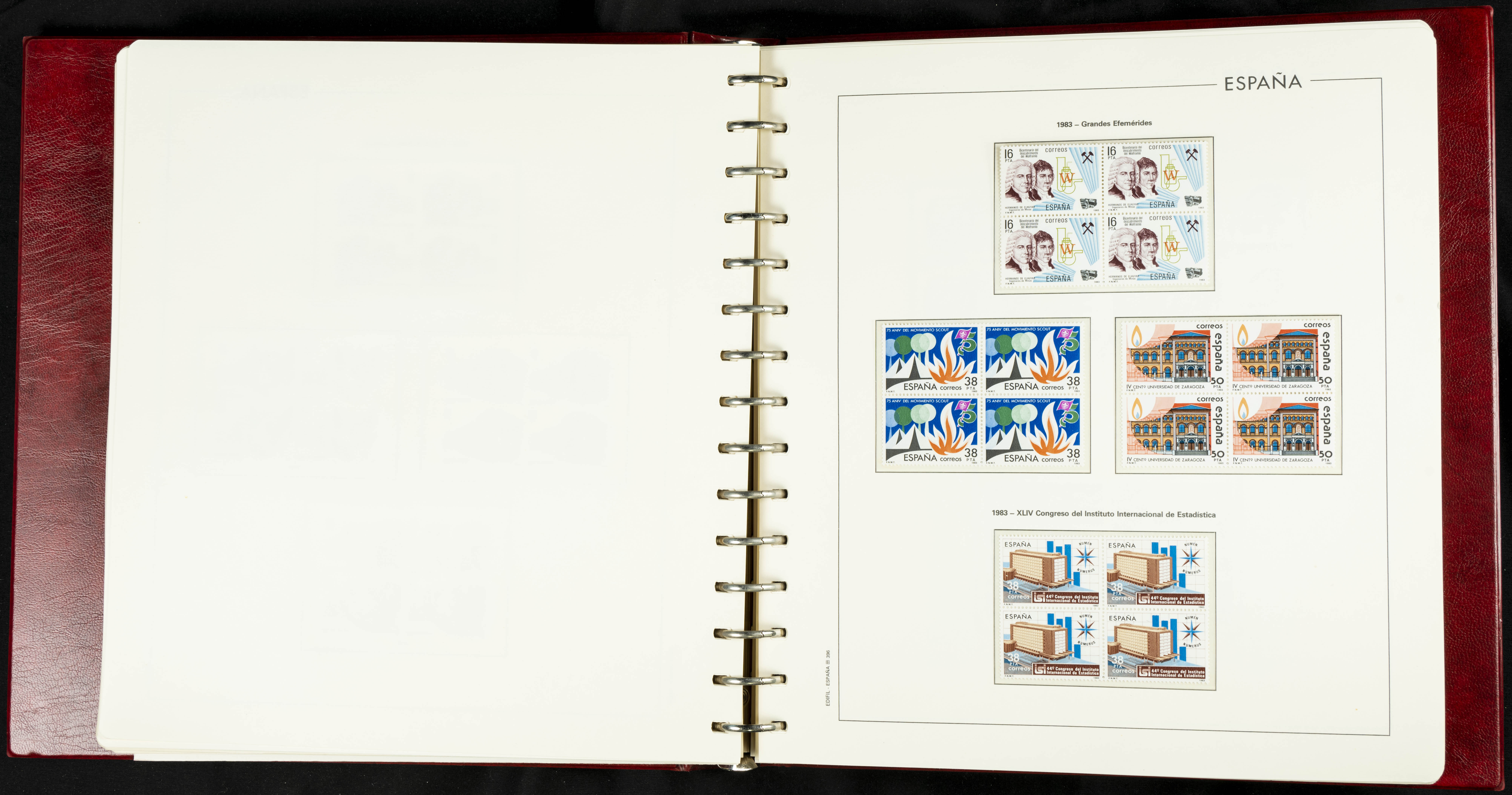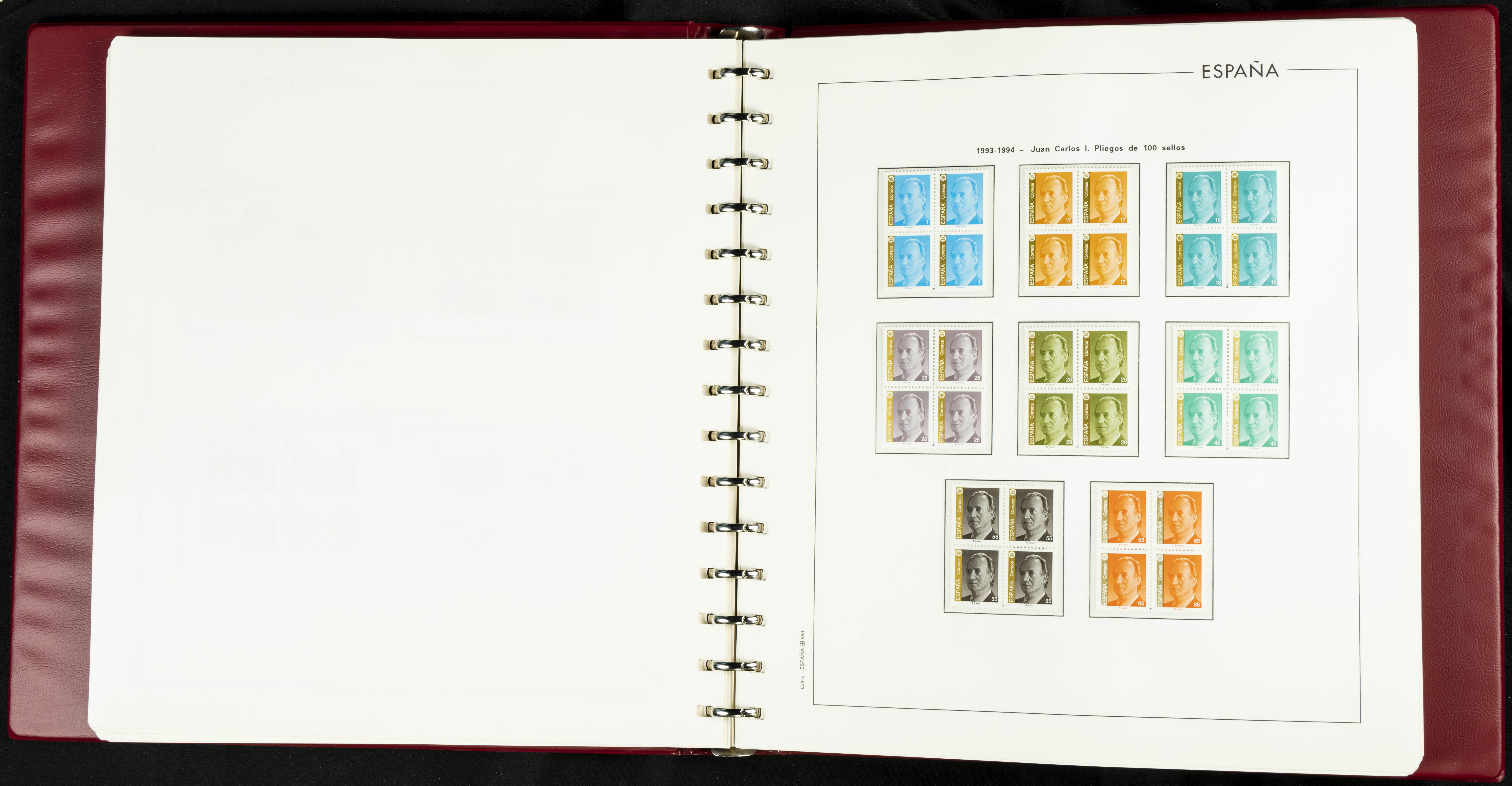 ★★(1976ca). Complete collection between 1976 and 1999, including the 2000 portion denominated exclusively in pesetas, in blocks of four (with a souvenir sheet), in mint condition (mounted in albums). HIGH CATALOGUE VALUE. TO BE EXAMINED.