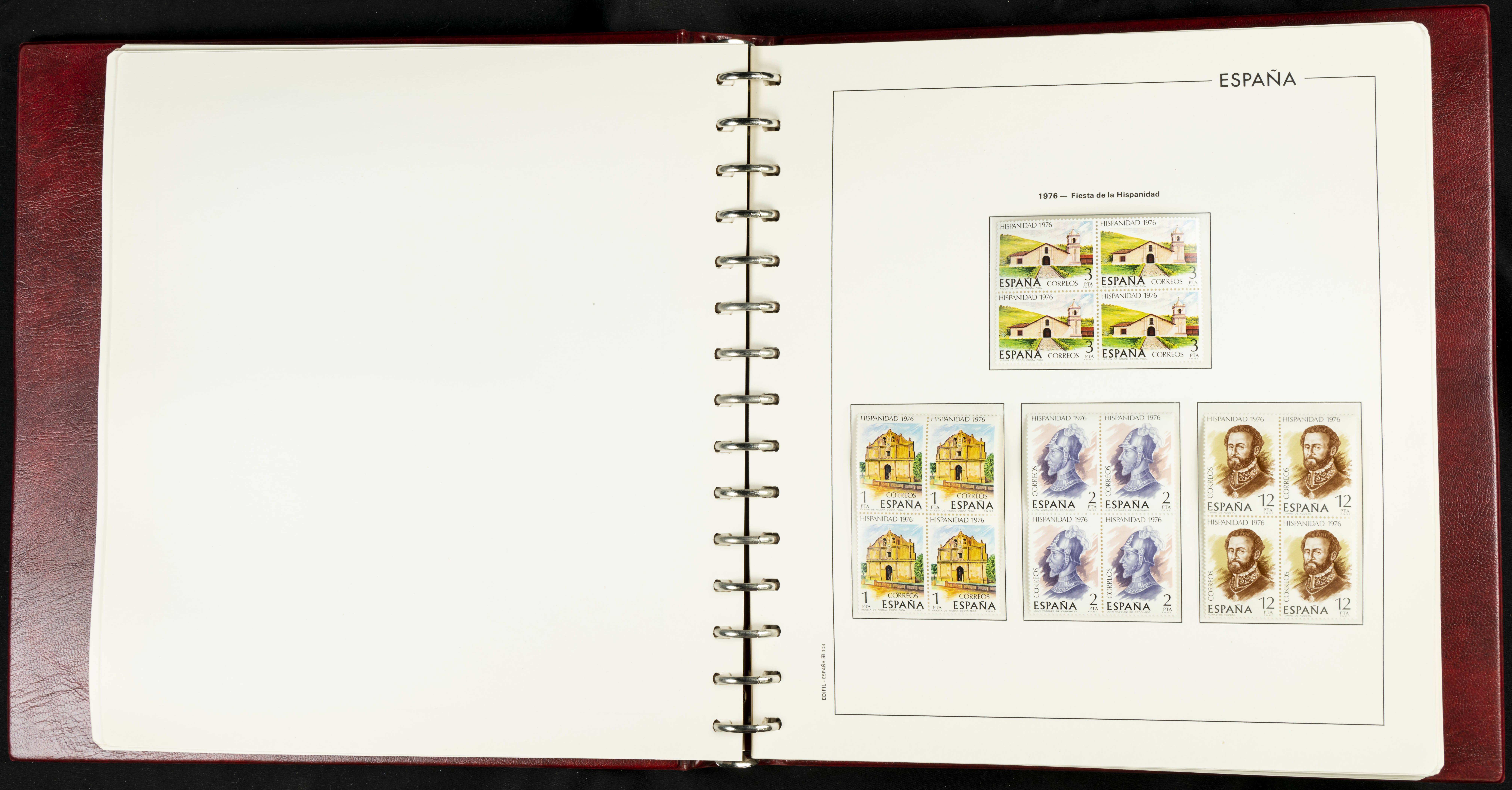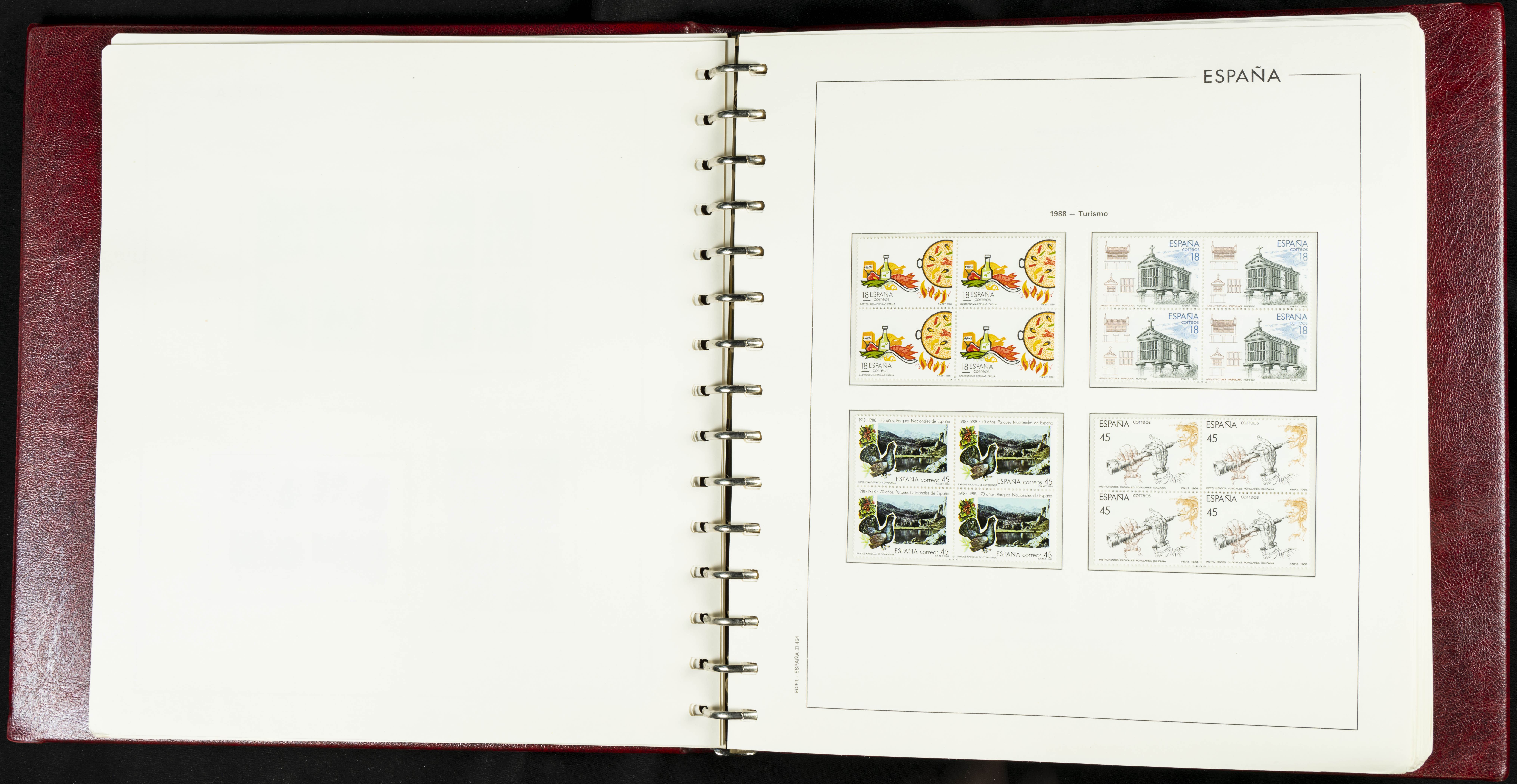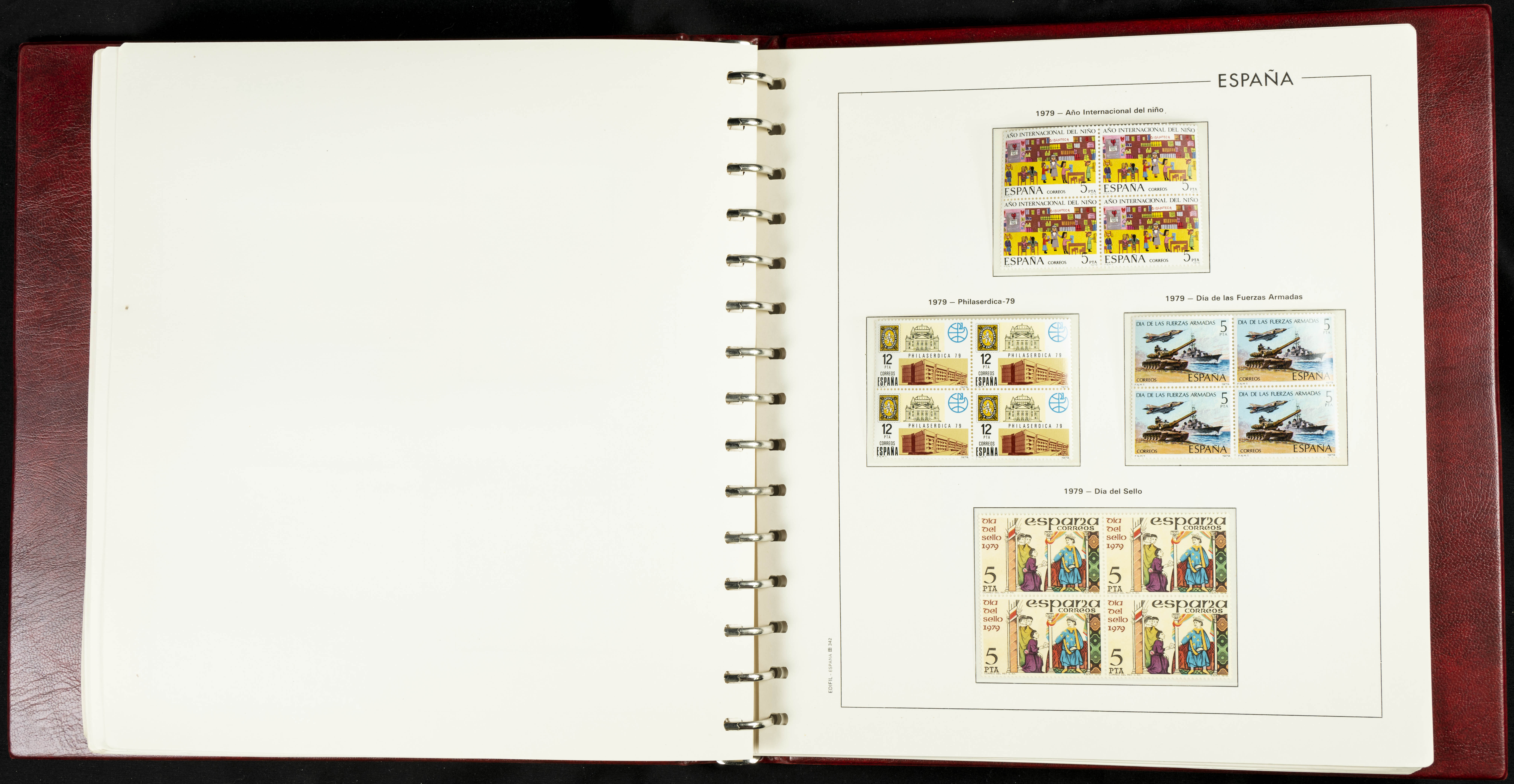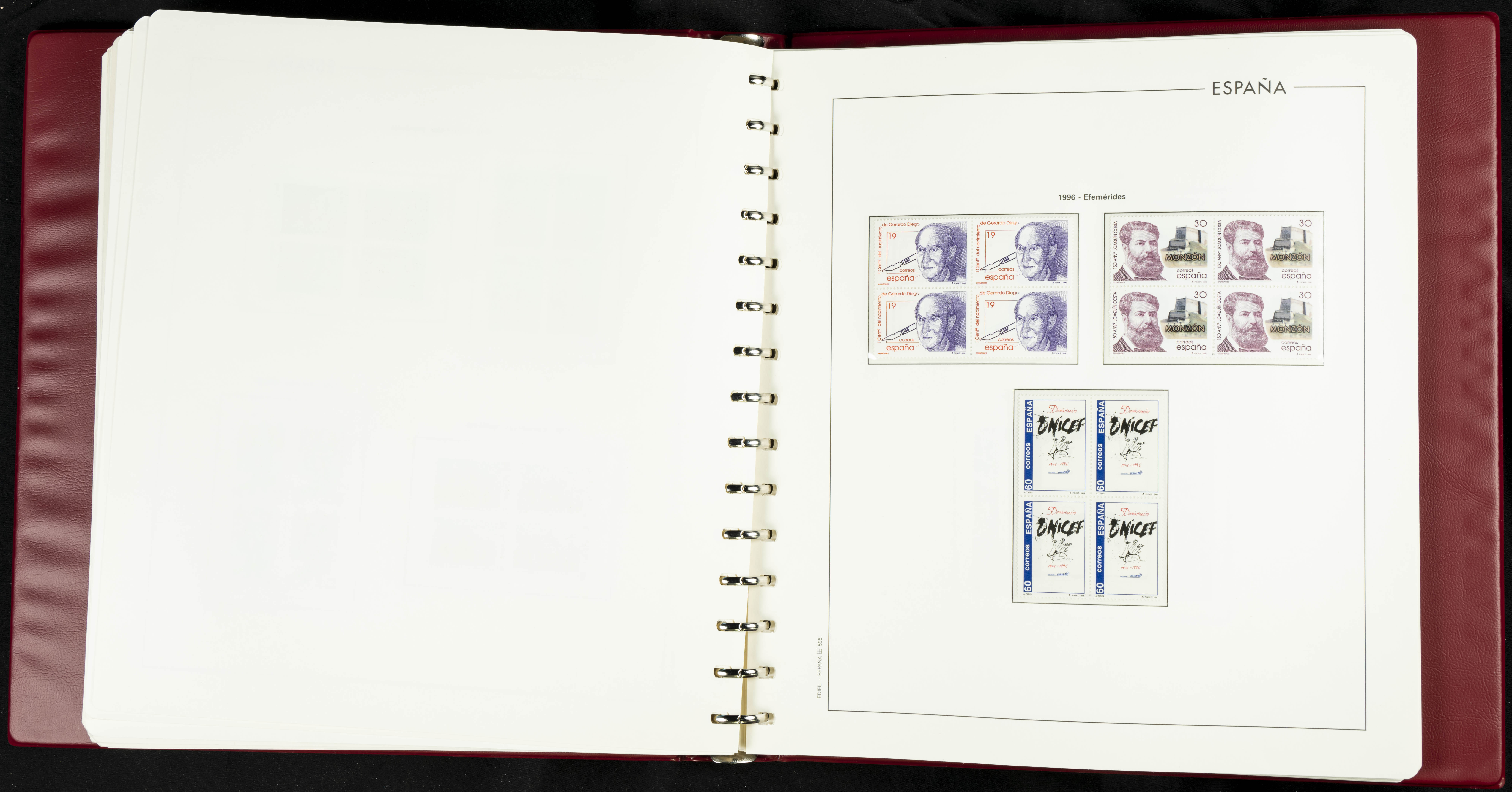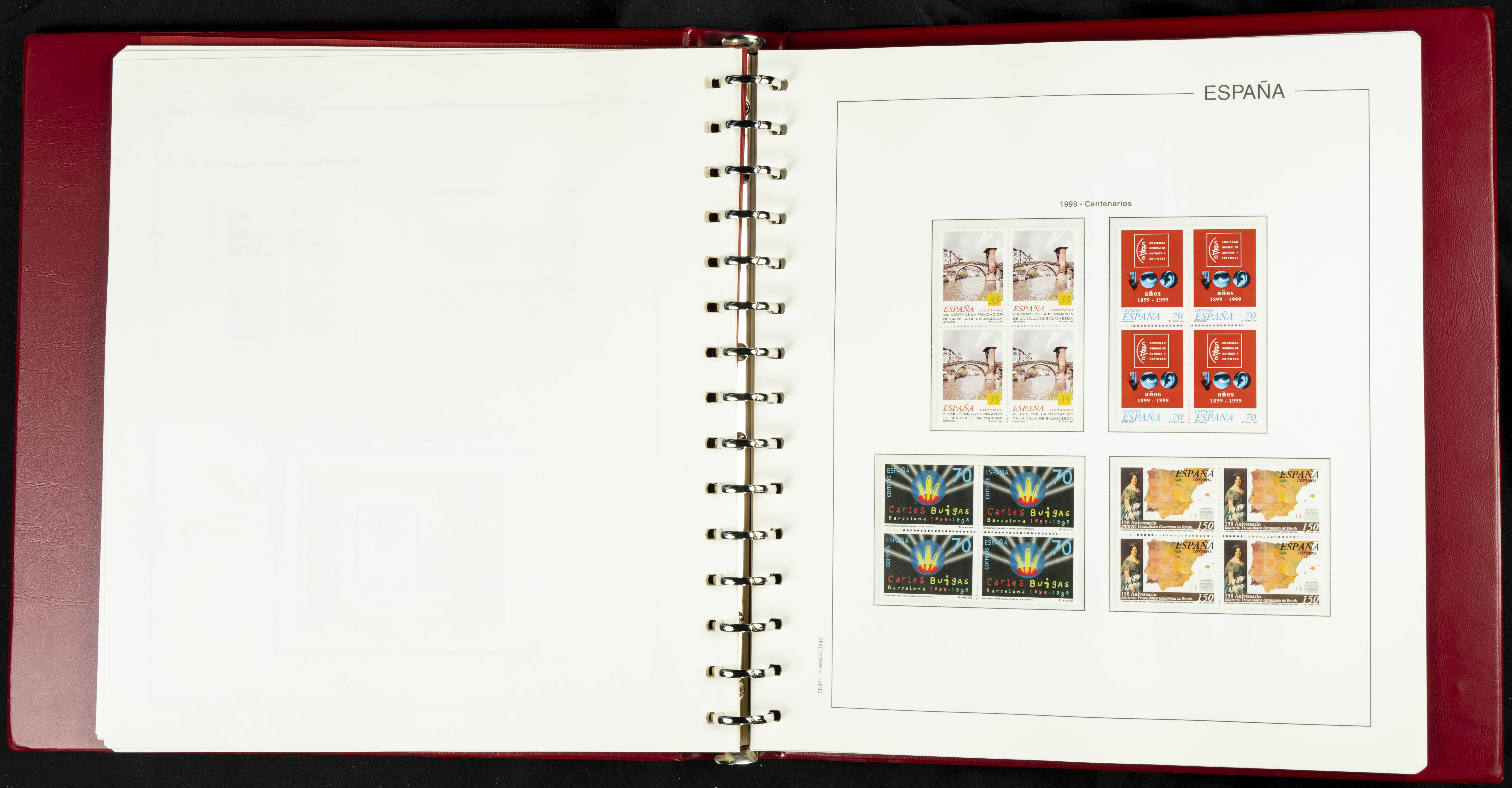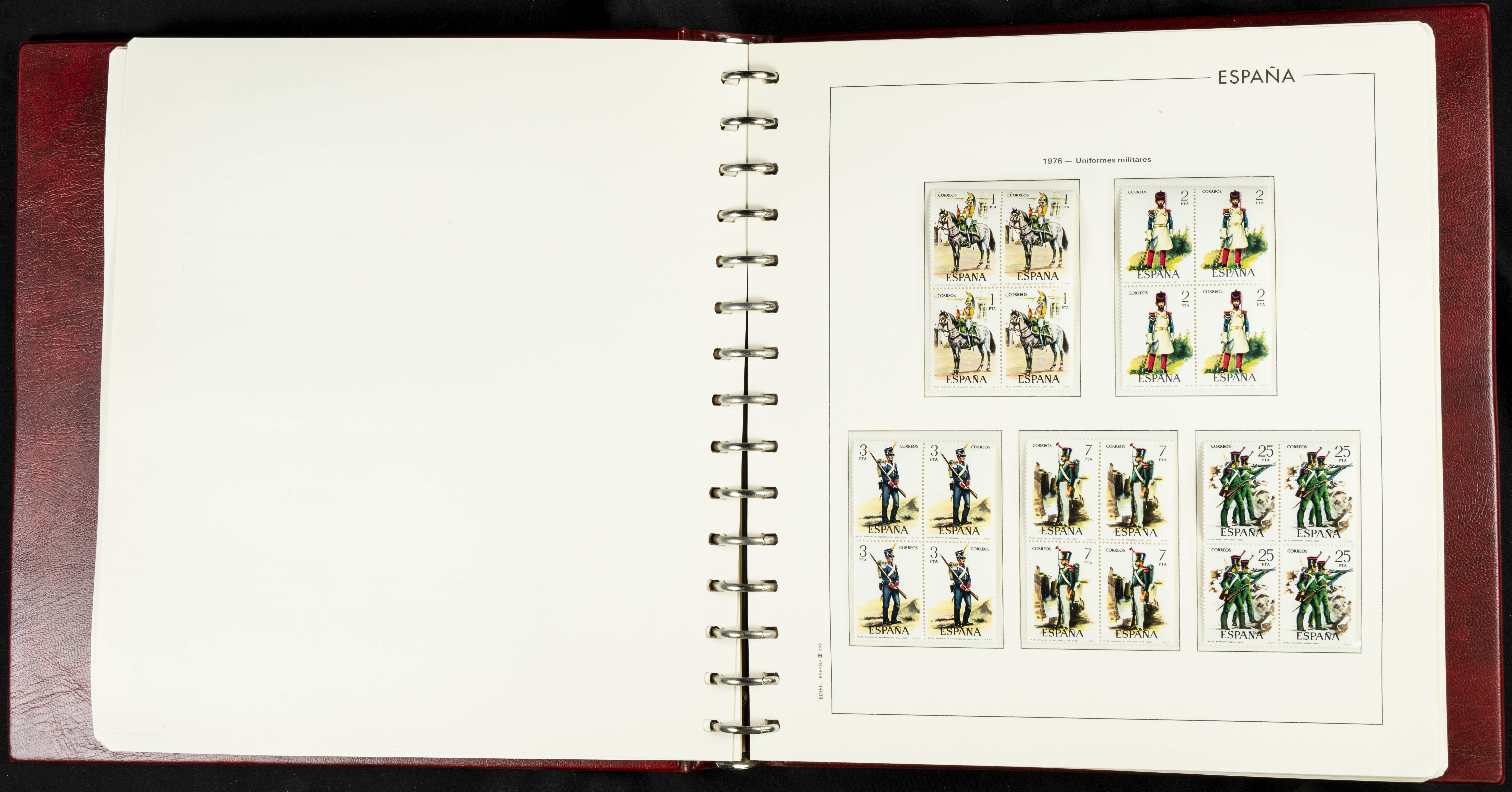 ★★(1976ca). Complete collection between 1976 and 1999, including the 2000 portion denominated exclusively in pesetas, in blocks of four (with a souvenir sheet), in mint condition (mounted in albums). HIGH CATALOGUE VALUE. TO BE EXAMINED.