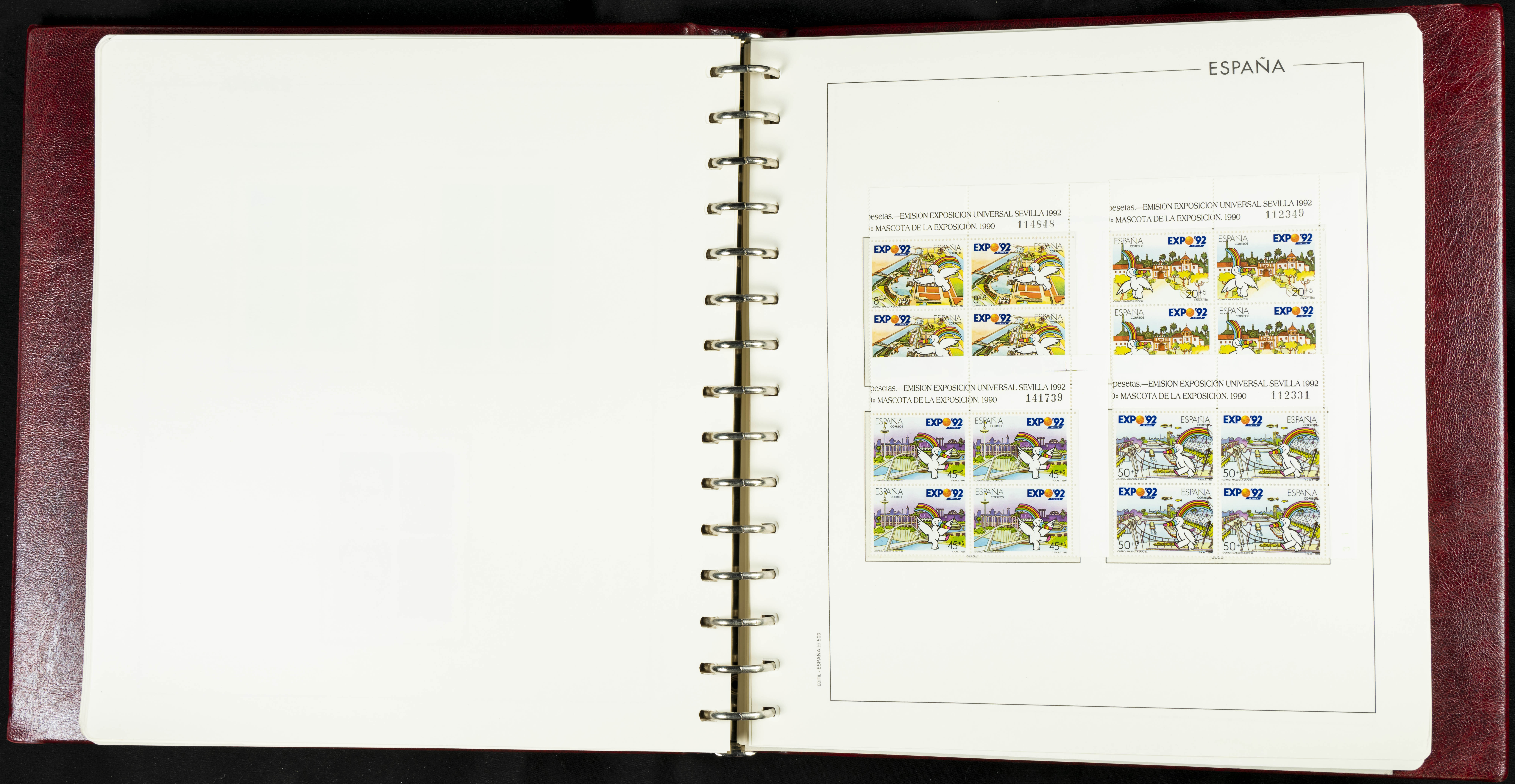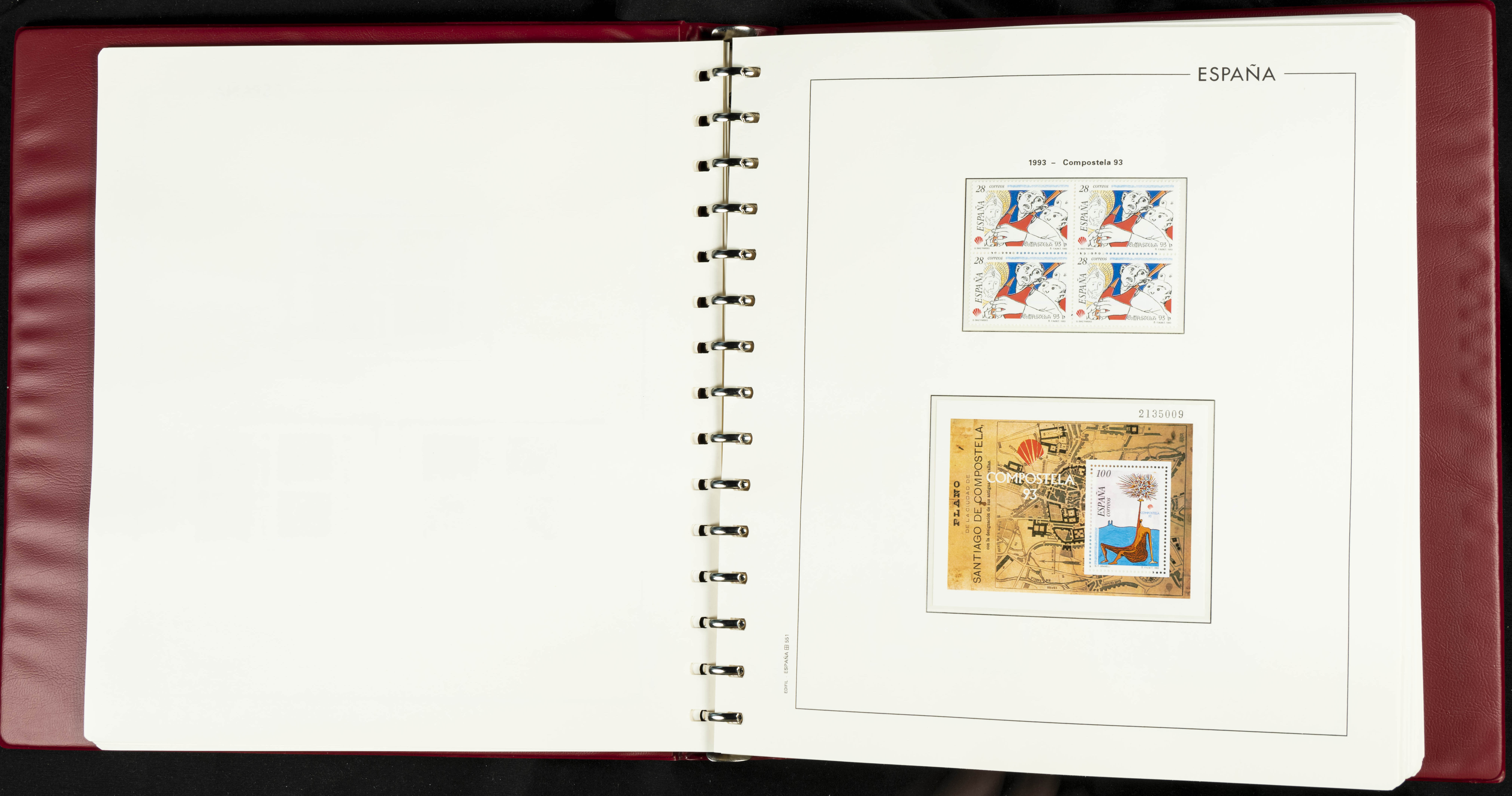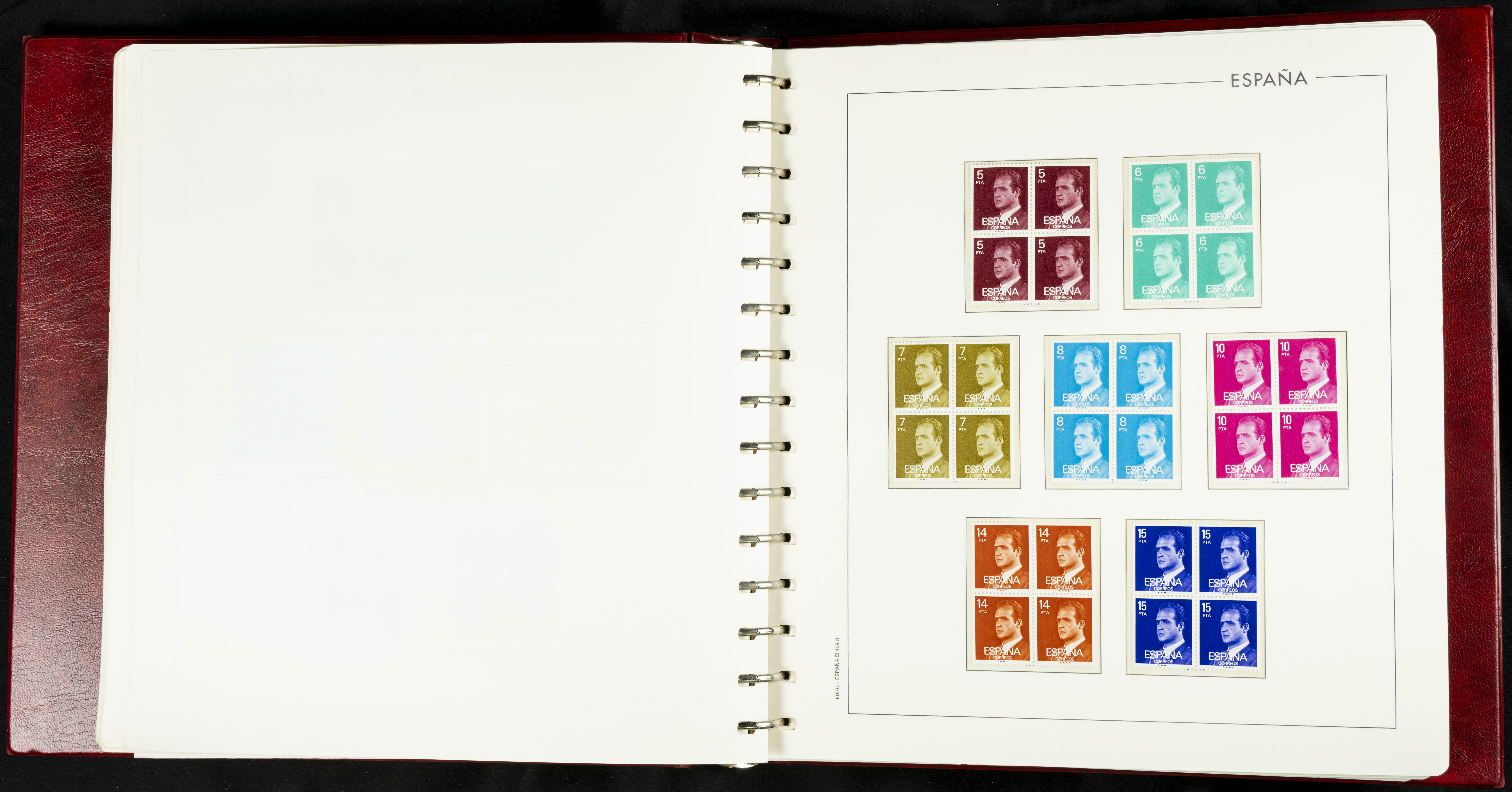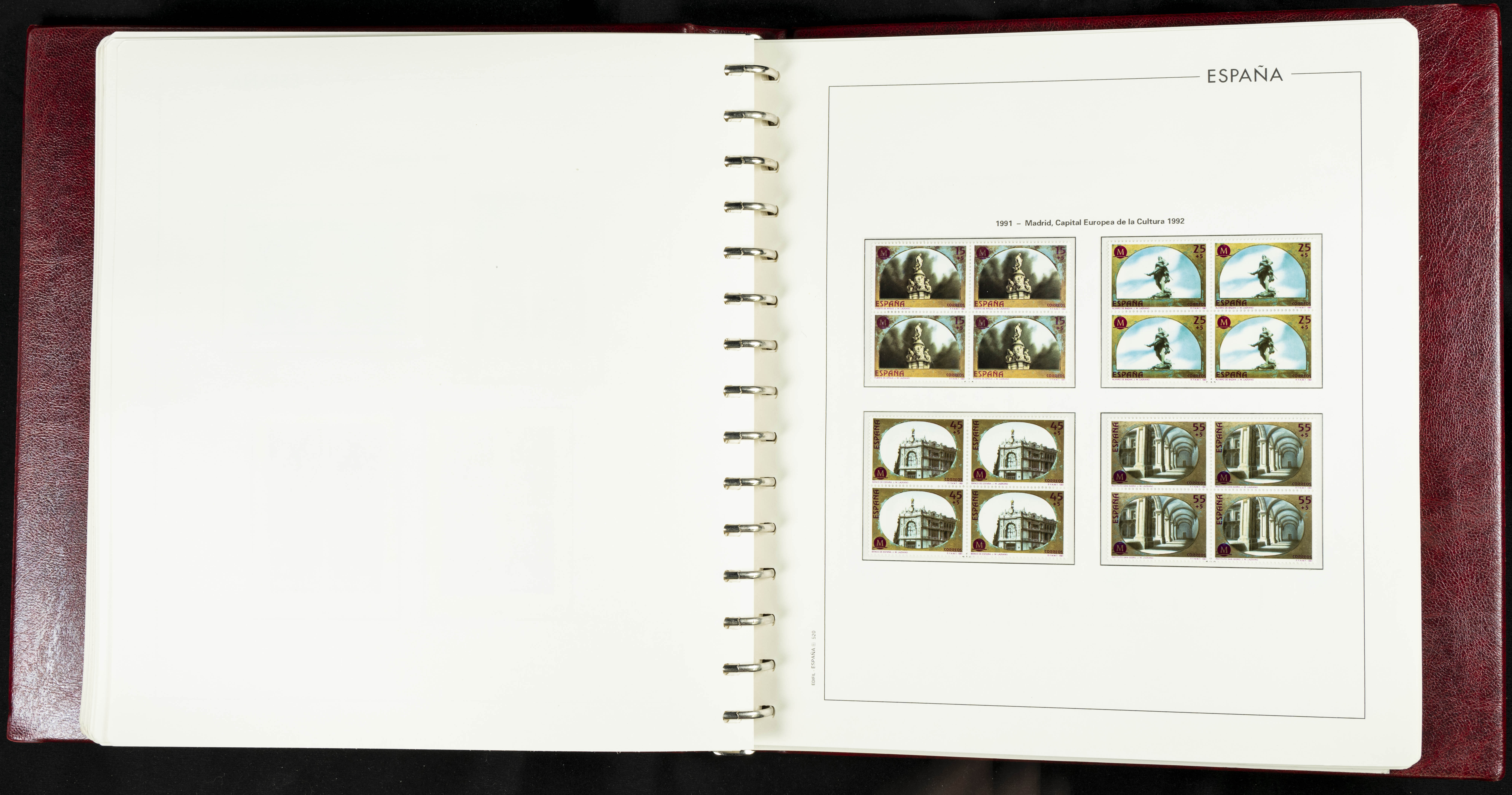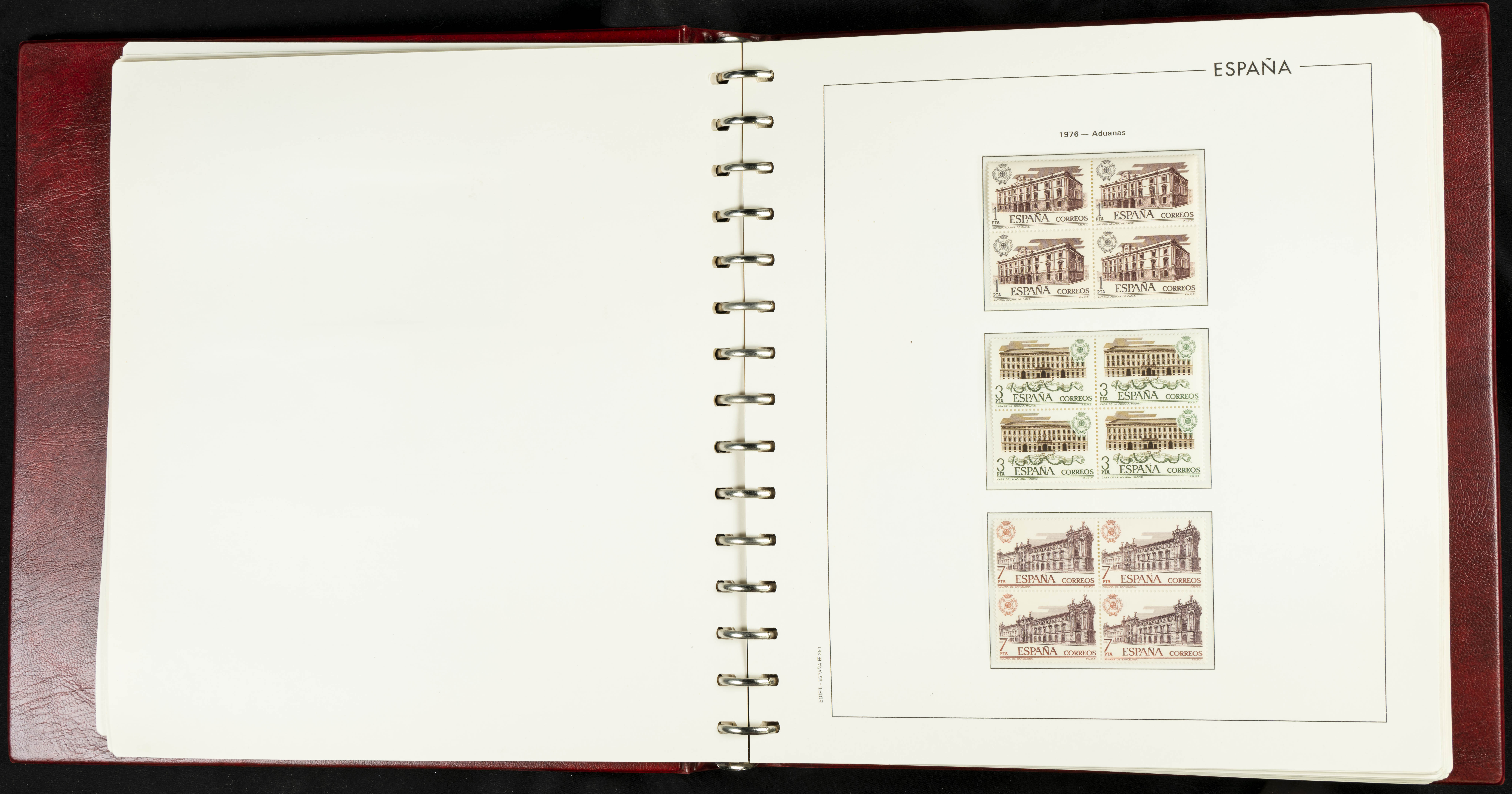 ★★(1976ca). Complete collection between 1976 and 1999, including the 2000 portion denominated exclusively in pesetas, in blocks of four (with a souvenir sheet), in mint condition (mounted in albums). HIGH CATALOGUE VALUE. TO BE EXAMINED.