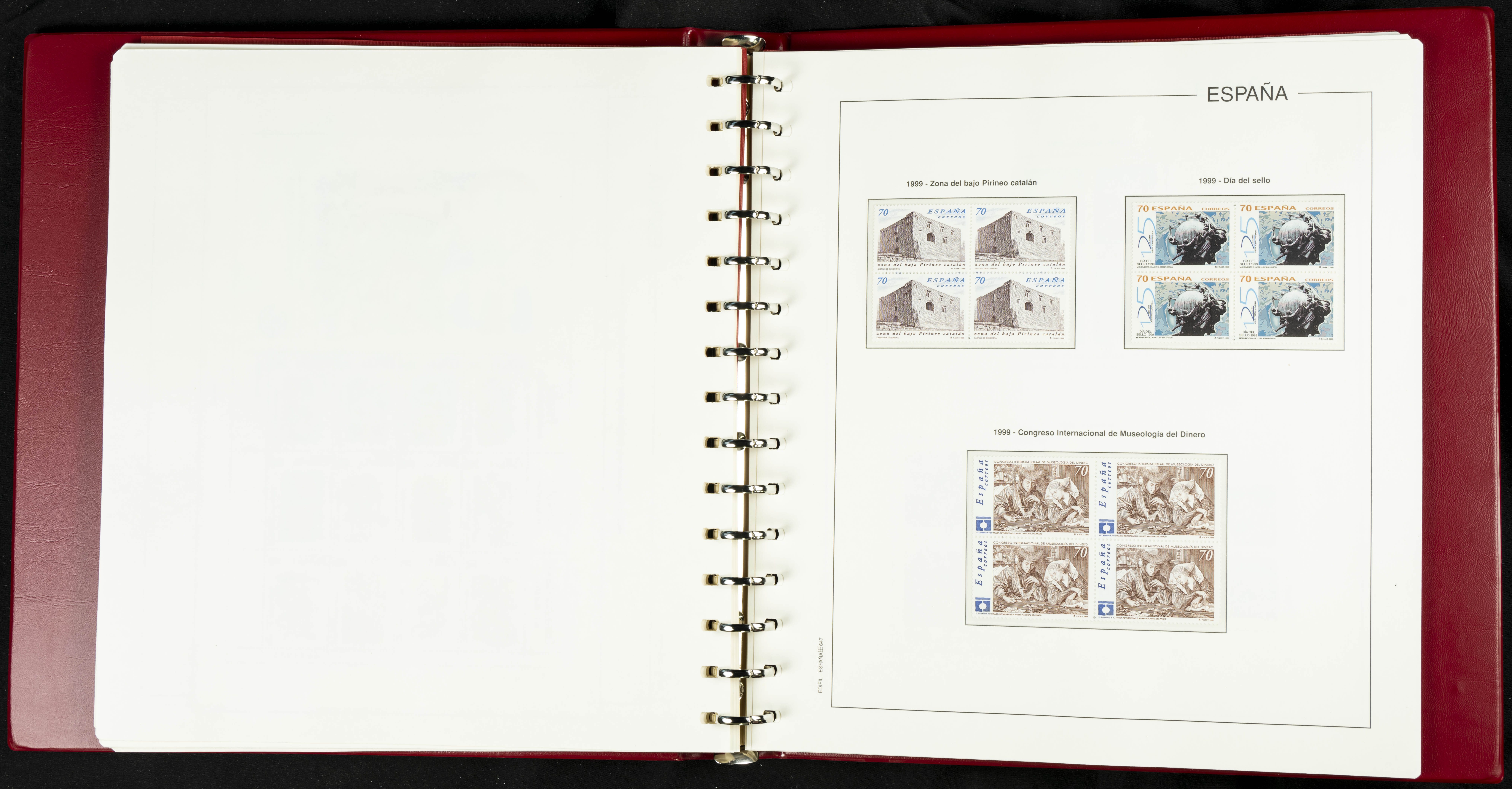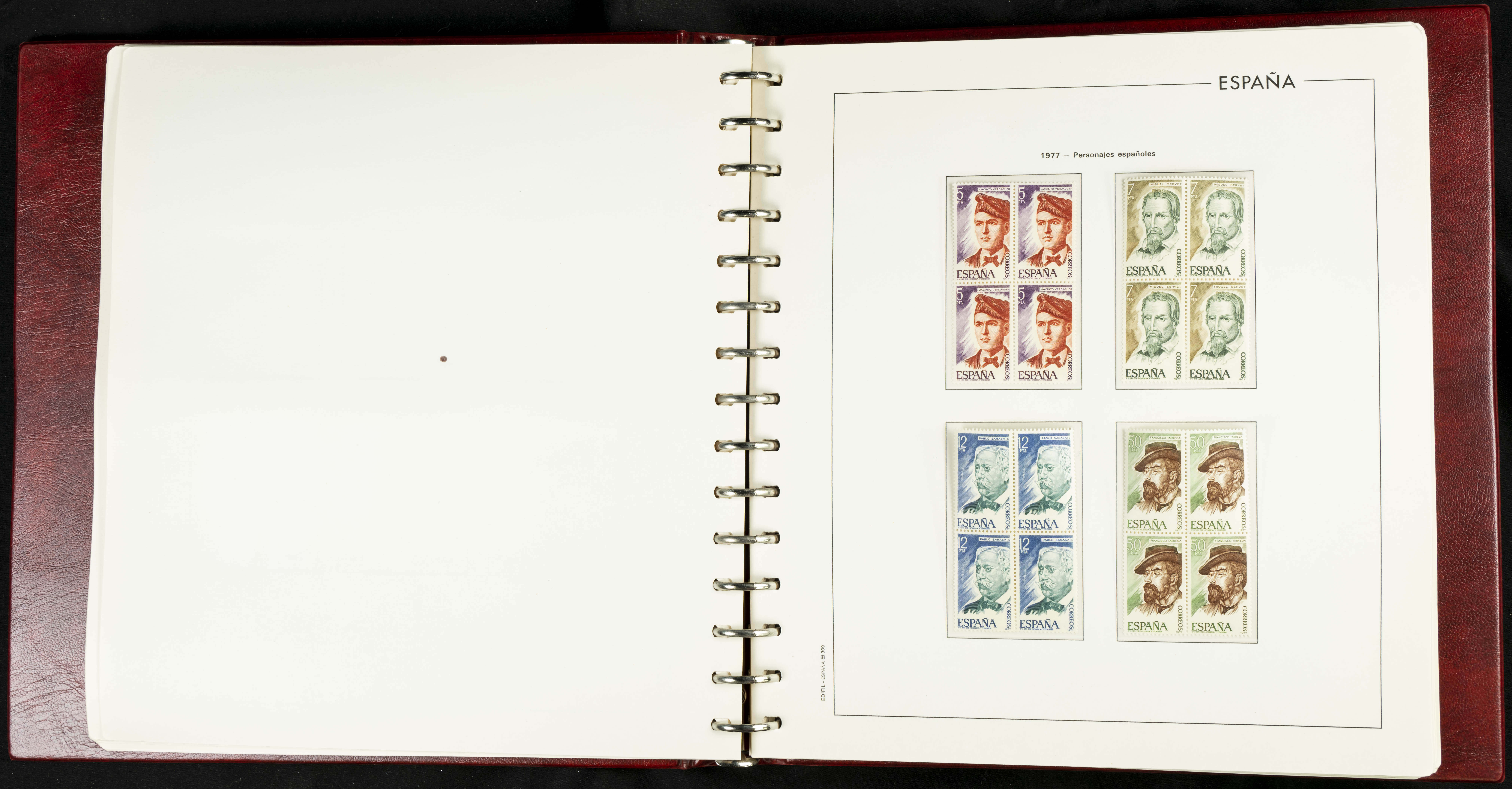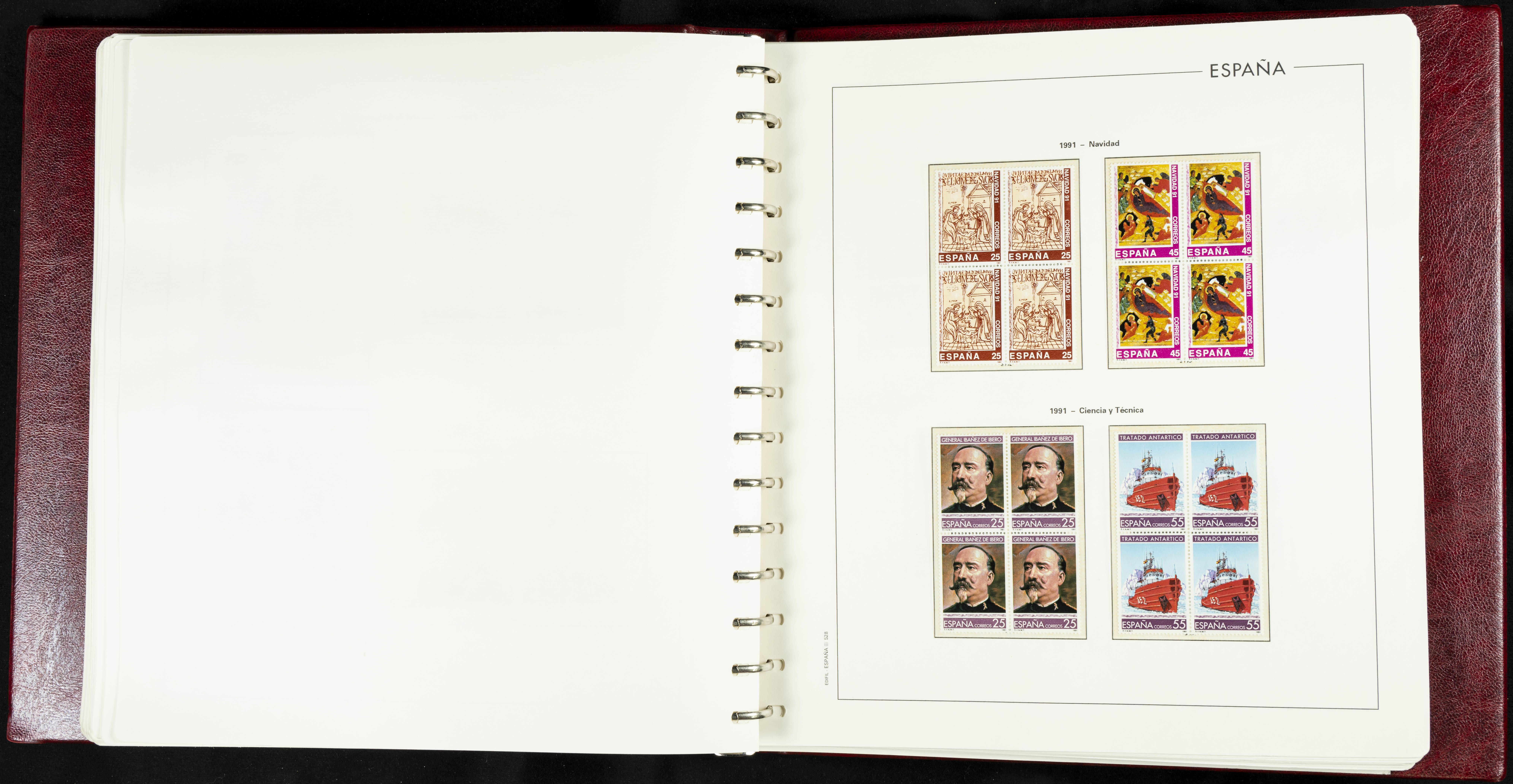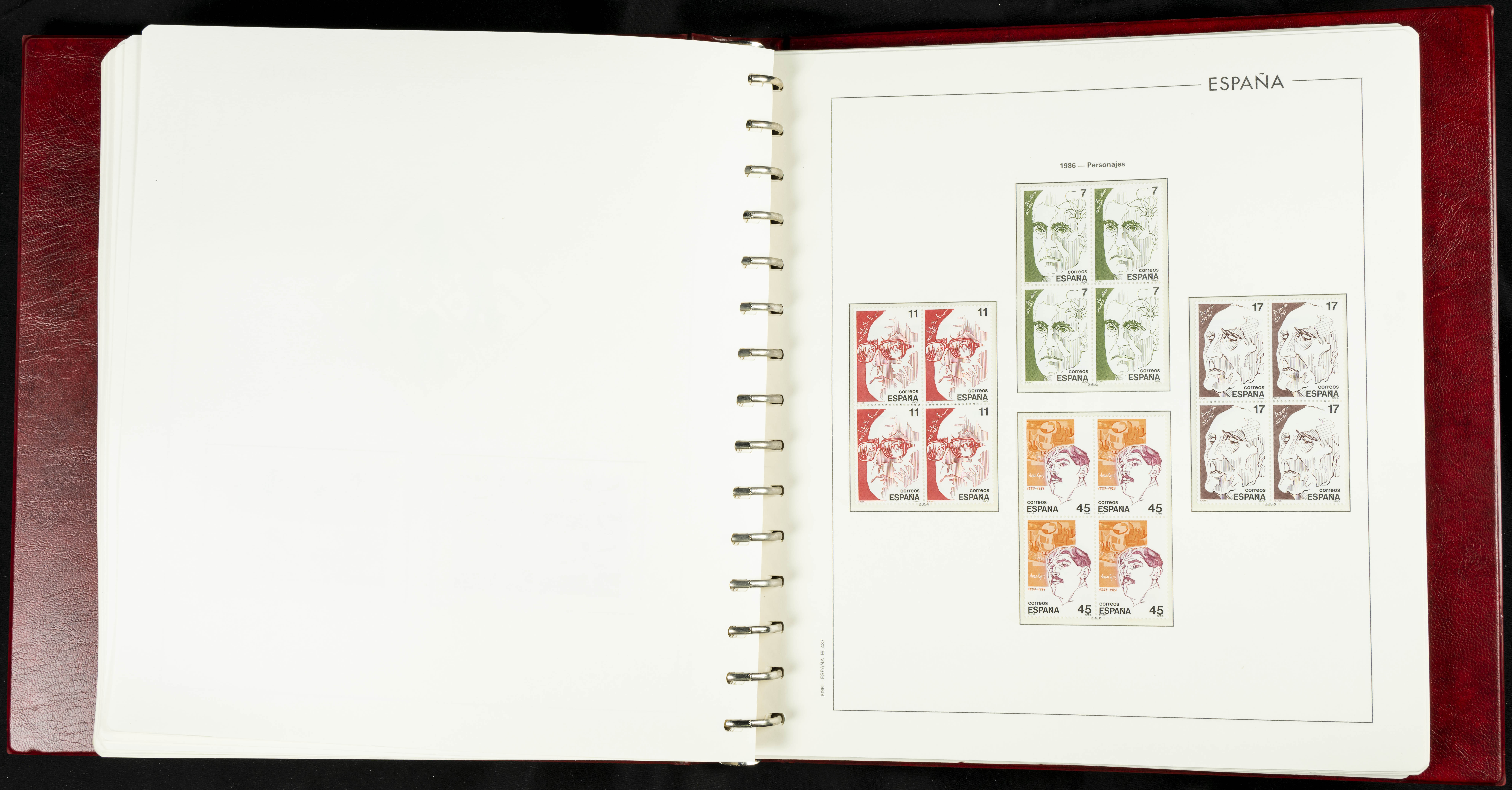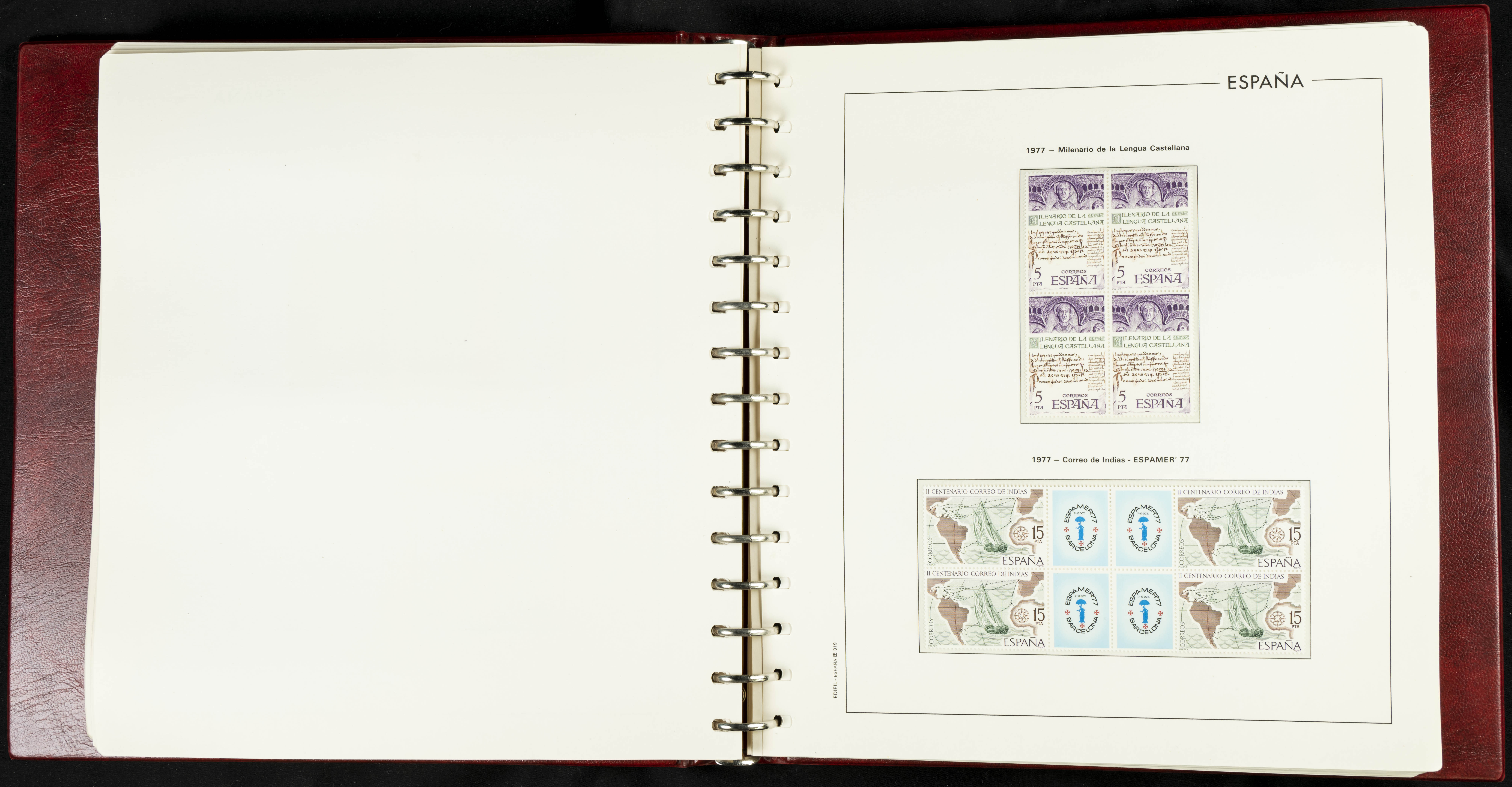 ★★(1976ca). Complete collection between 1976 and 1999, including the 2000 portion denominated exclusively in pesetas, in blocks of four (with a souvenir sheet), in mint condition (mounted in albums). HIGH CATALOGUE VALUE. TO BE EXAMINED.