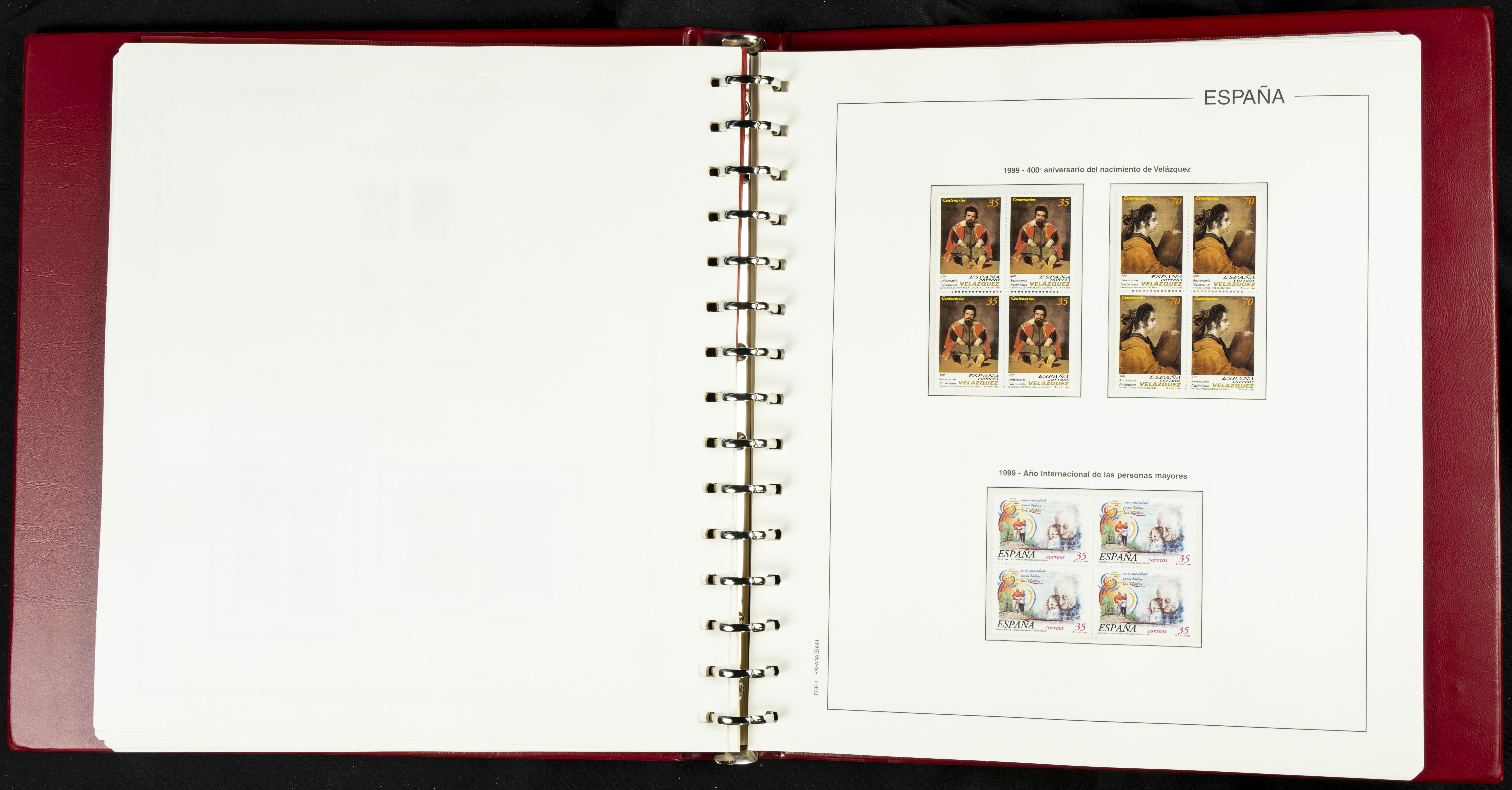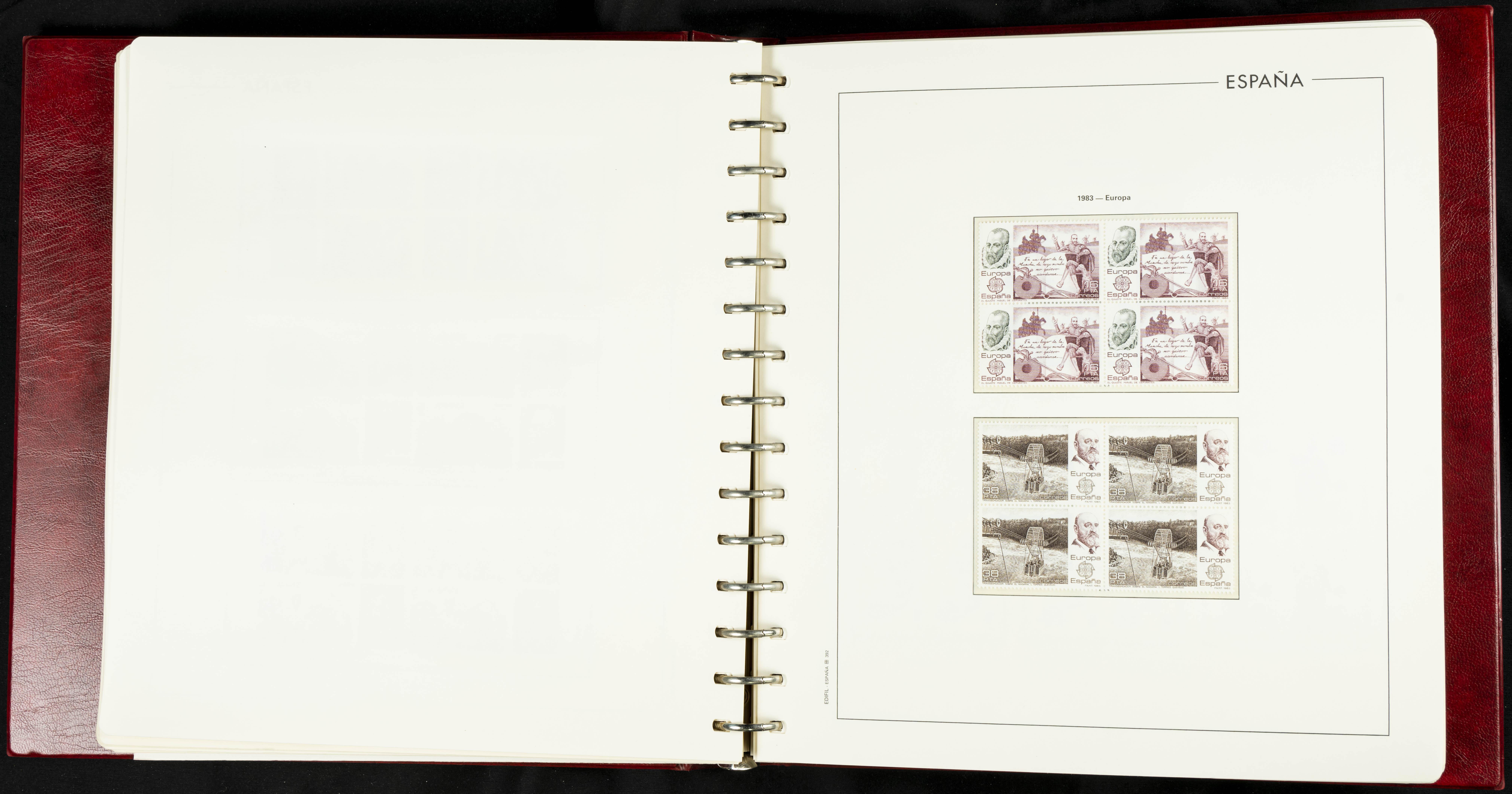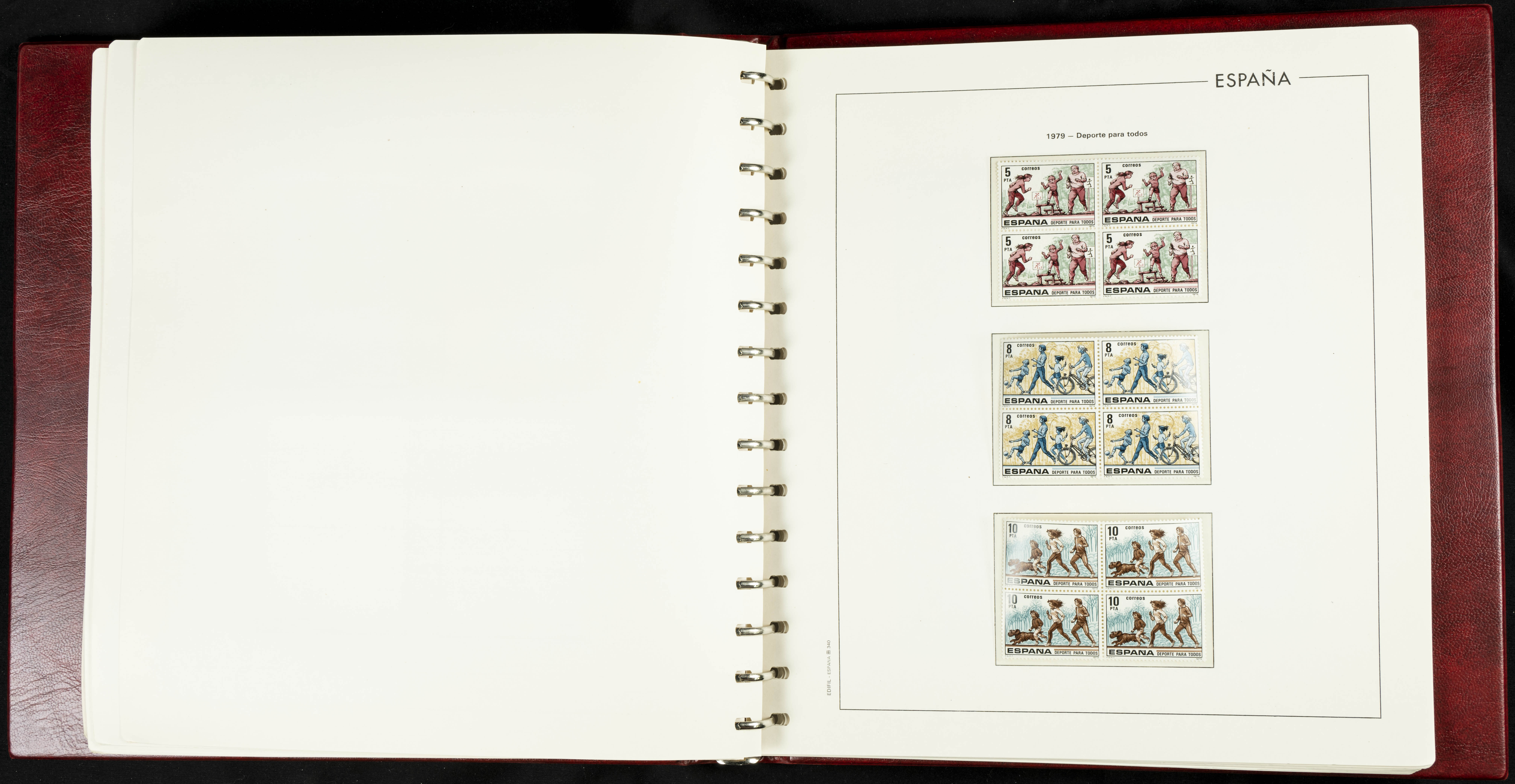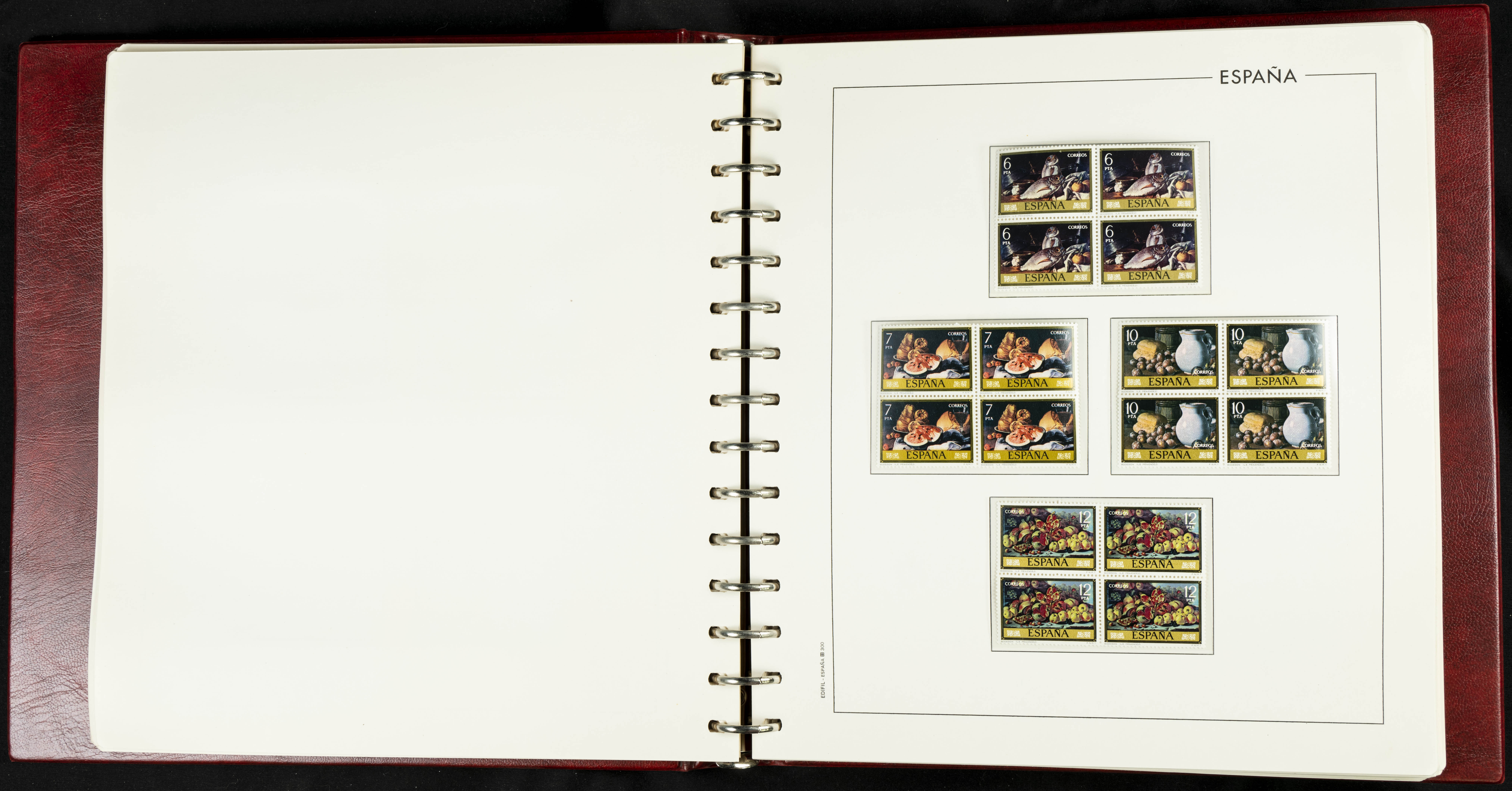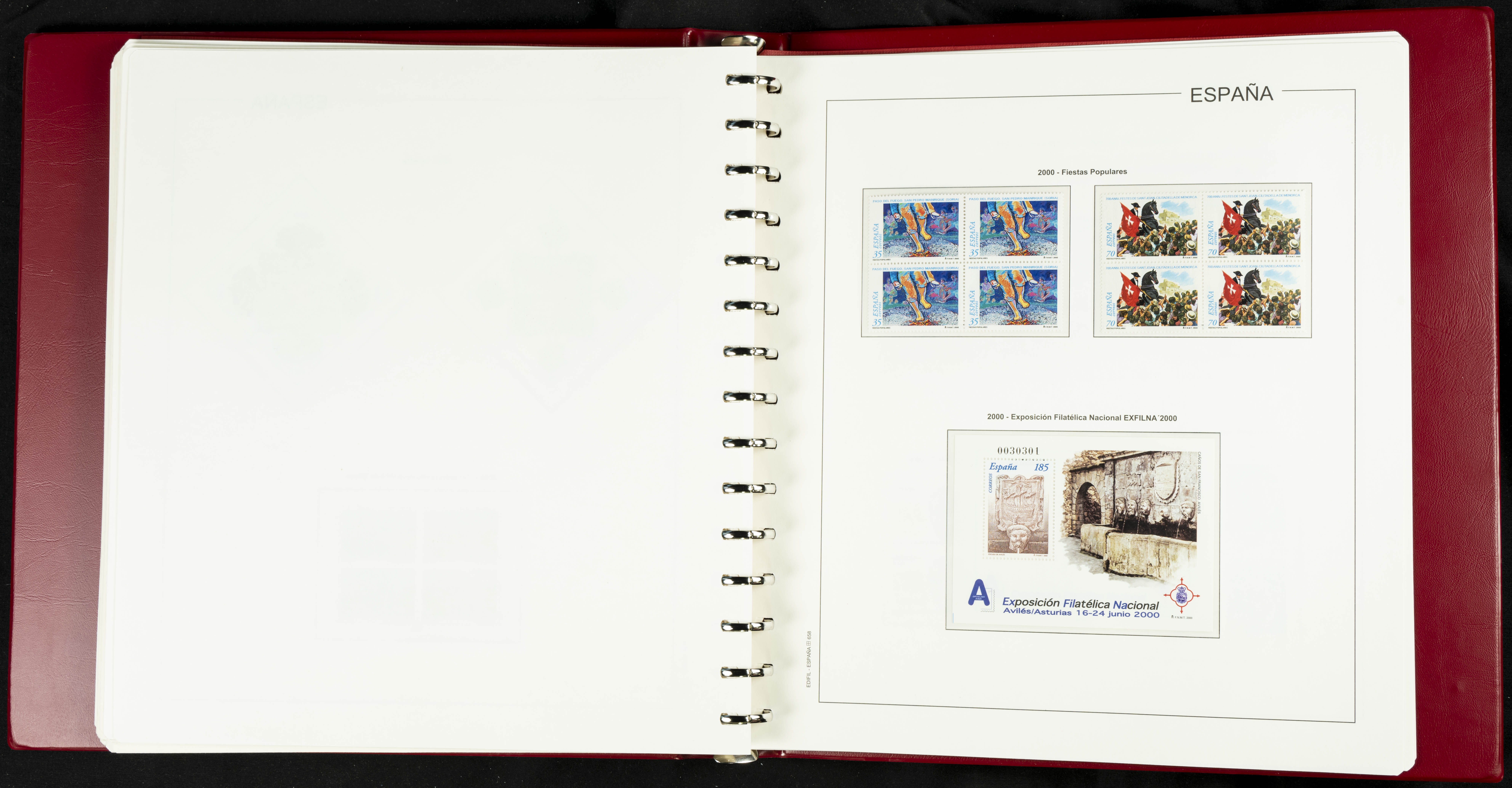 ★★(1976ca). Complete collection between 1976 and 1999, including the 2000 portion denominated exclusively in pesetas, in blocks of four (with a souvenir sheet), in mint condition (mounted in albums). HIGH CATALOGUE VALUE. TO BE EXAMINED.