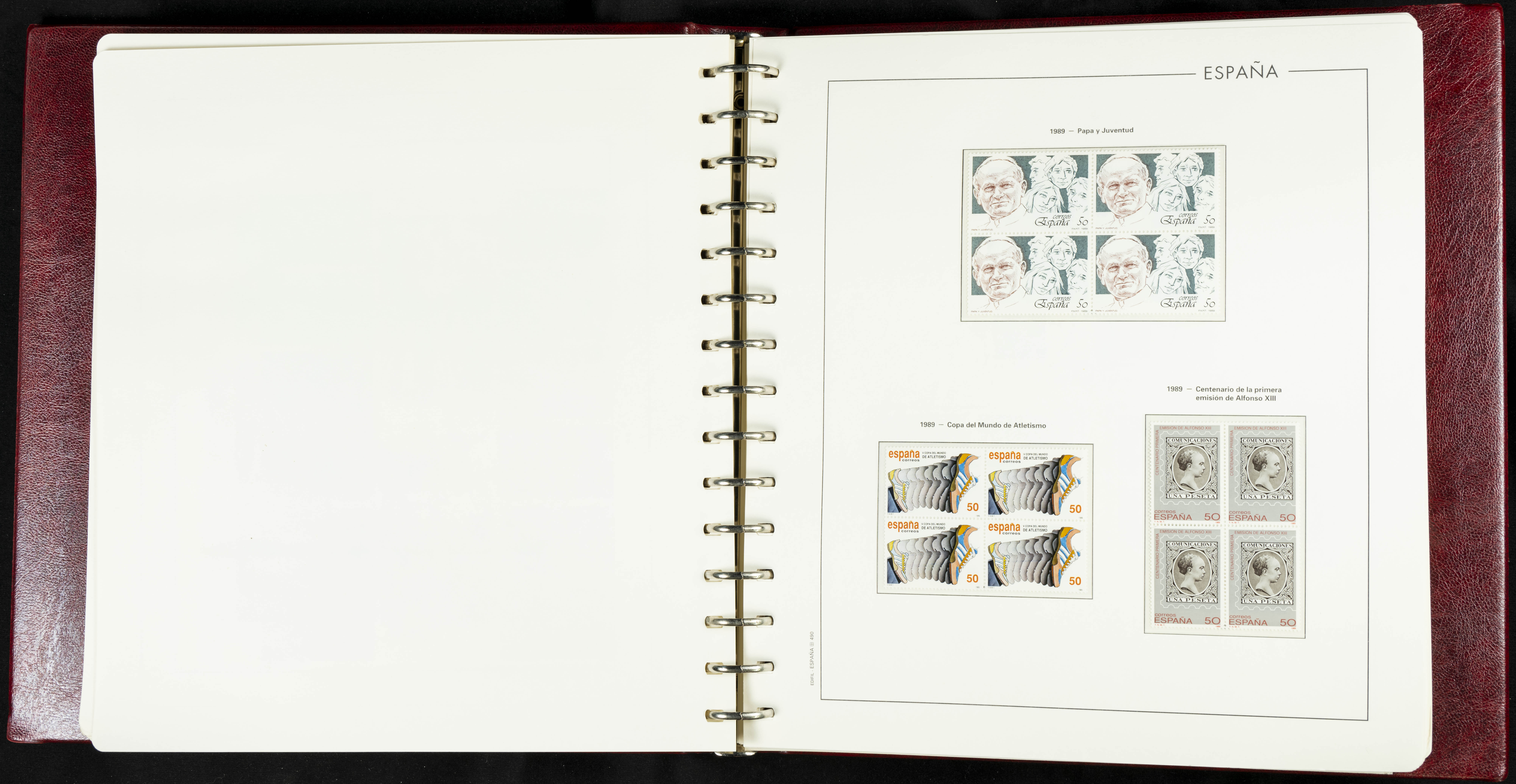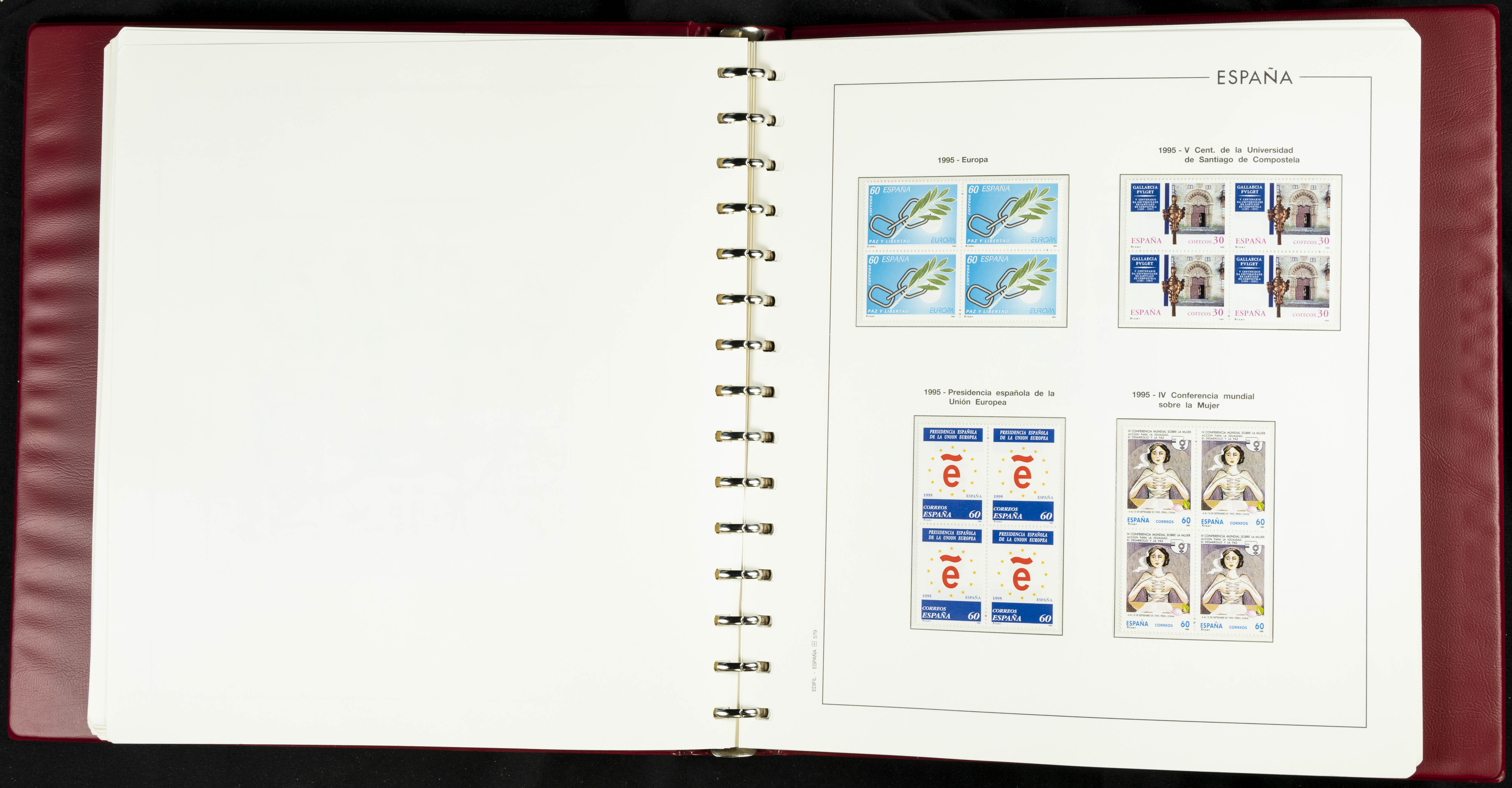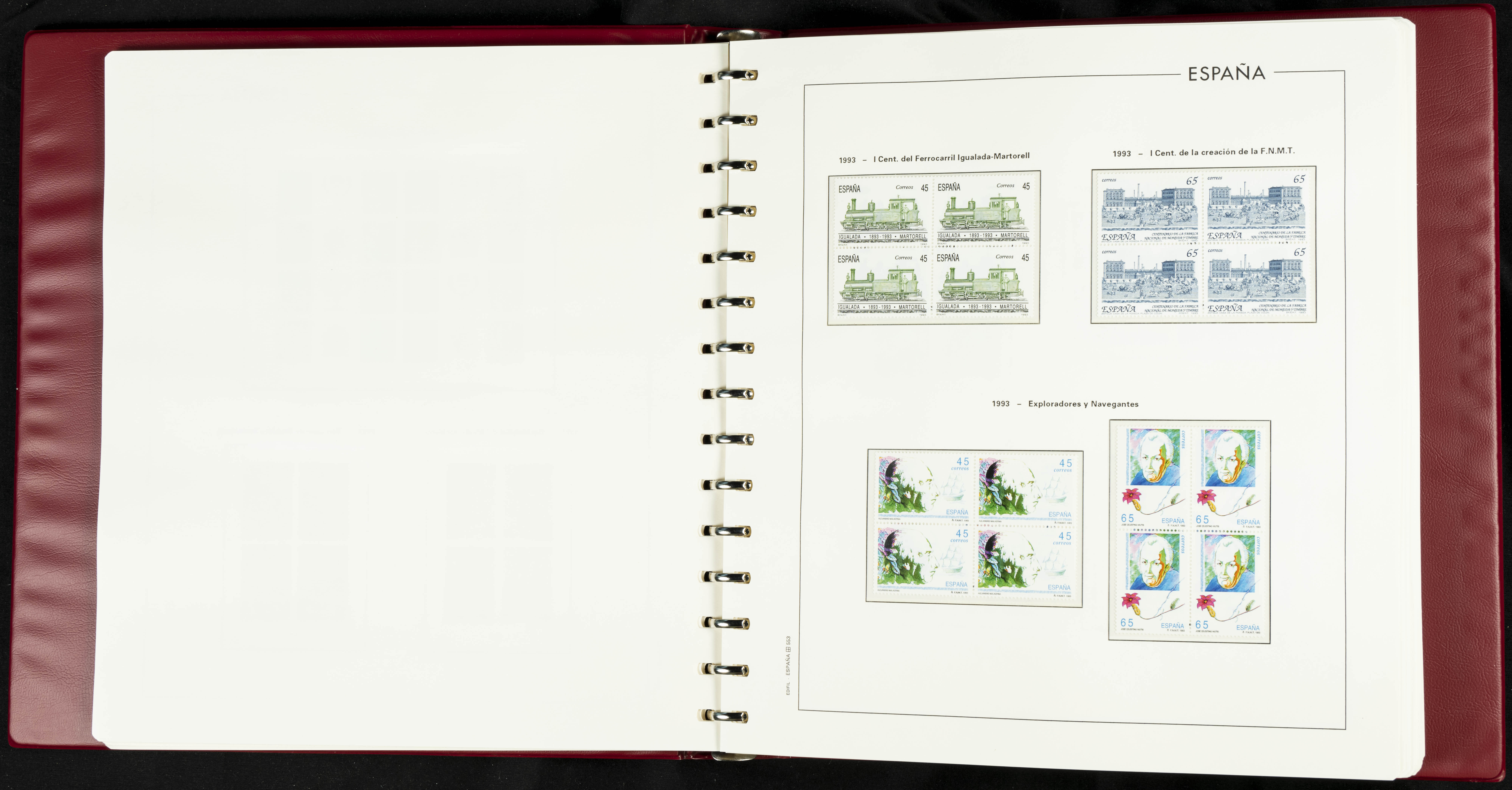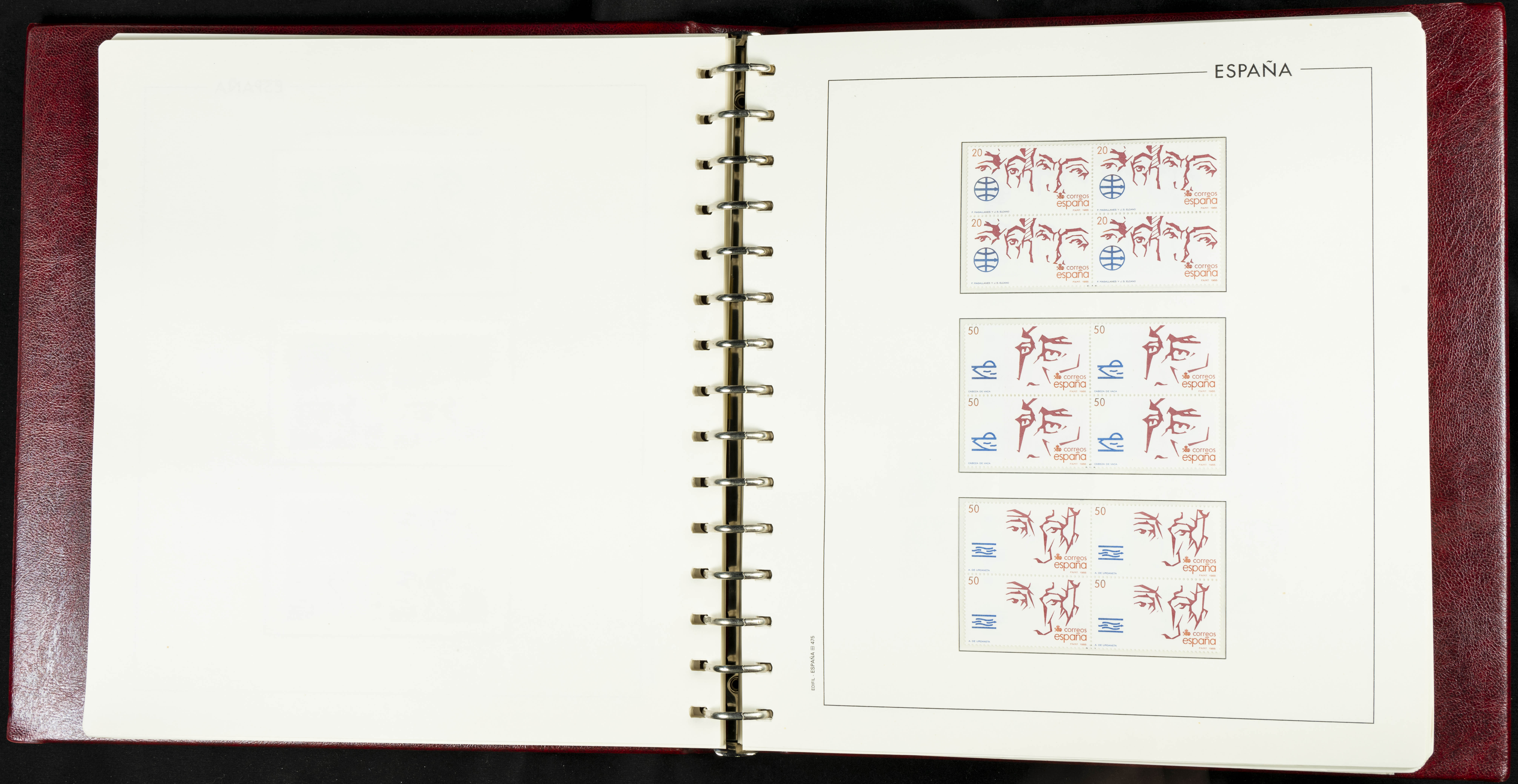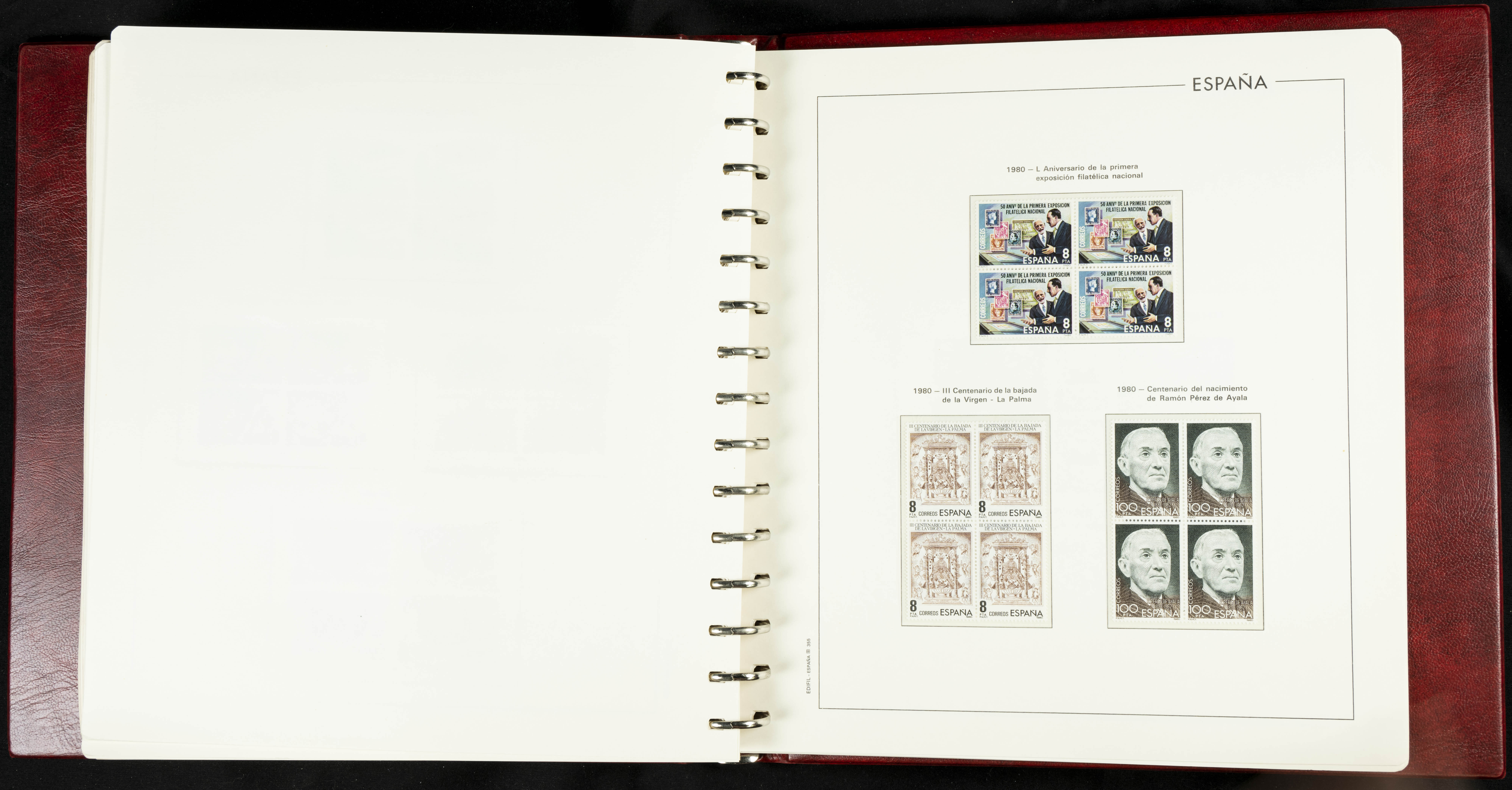 ★★(1976ca). Complete collection between 1976 and 1999, including the 2000 portion denominated exclusively in pesetas, in blocks of four (with a souvenir sheet), in mint condition (mounted in albums). HIGH CATALOGUE VALUE. TO BE EXAMINED.