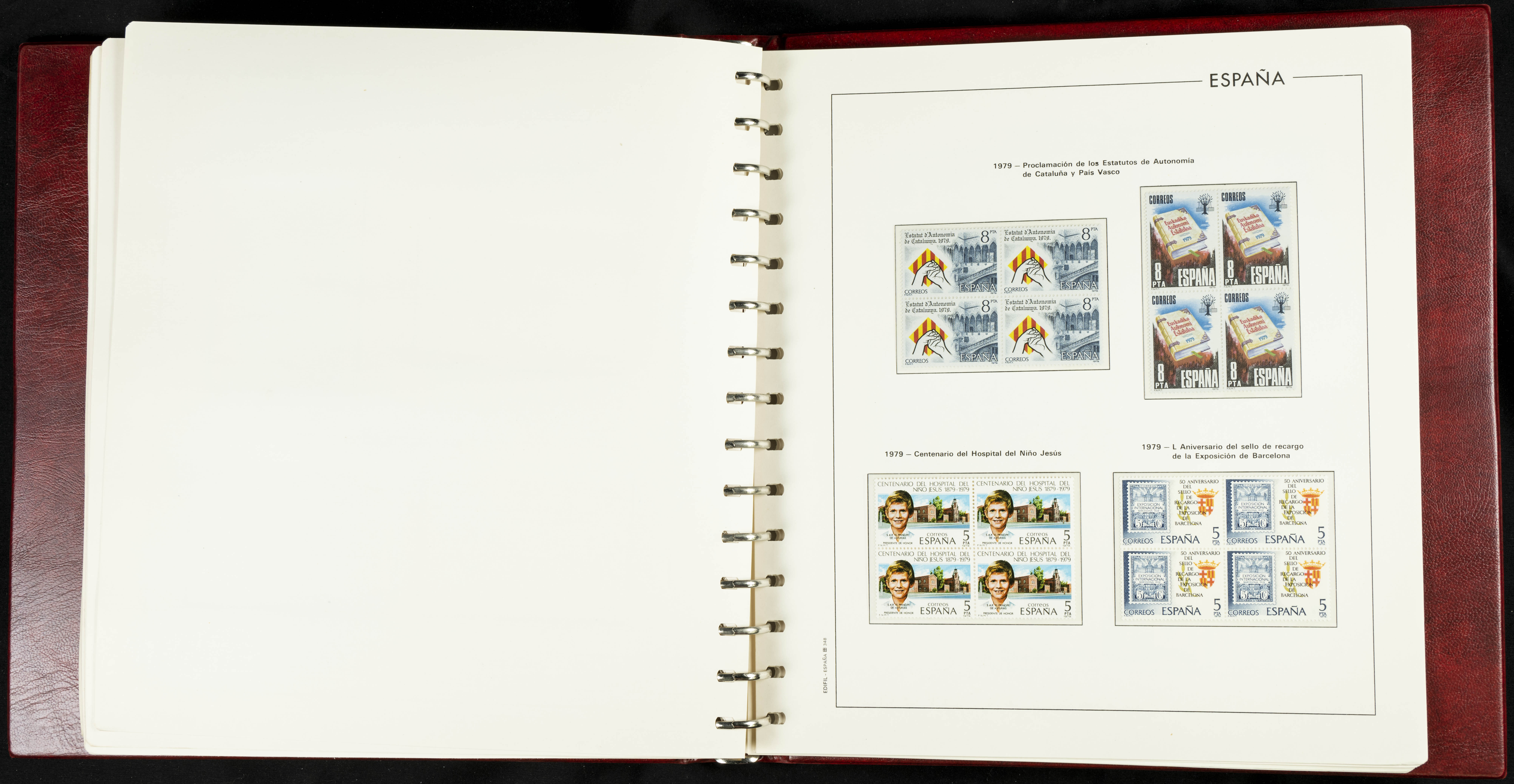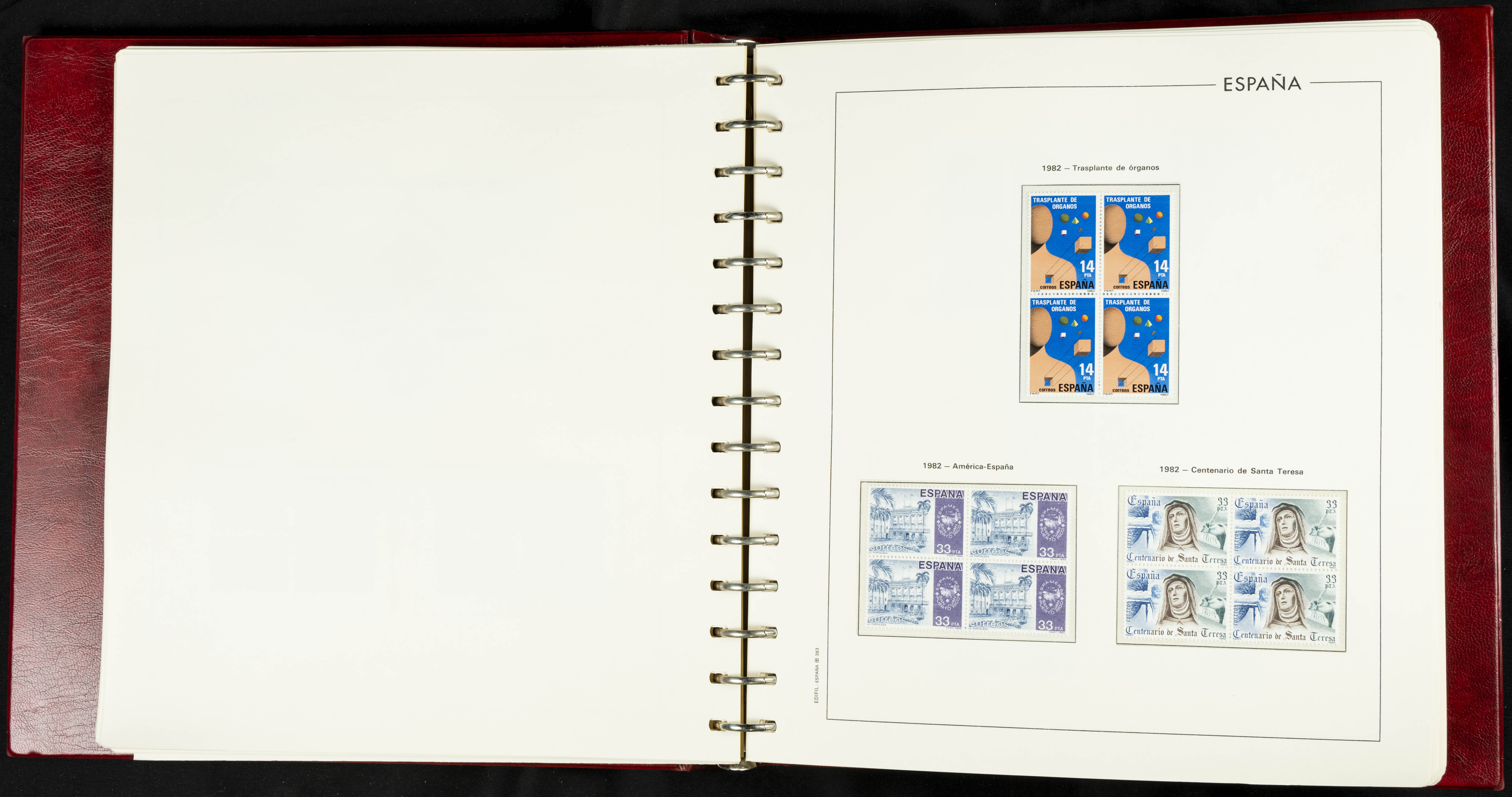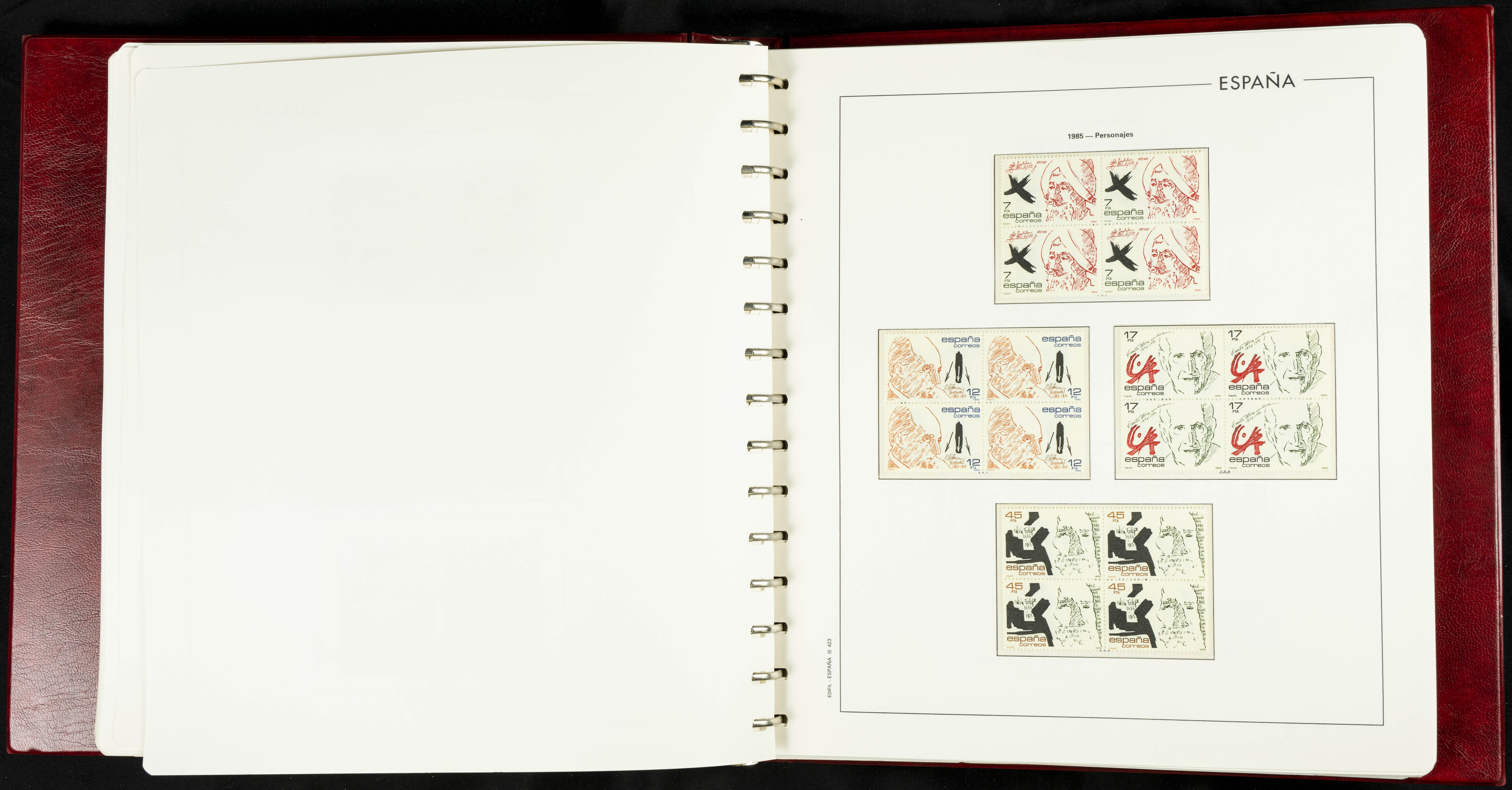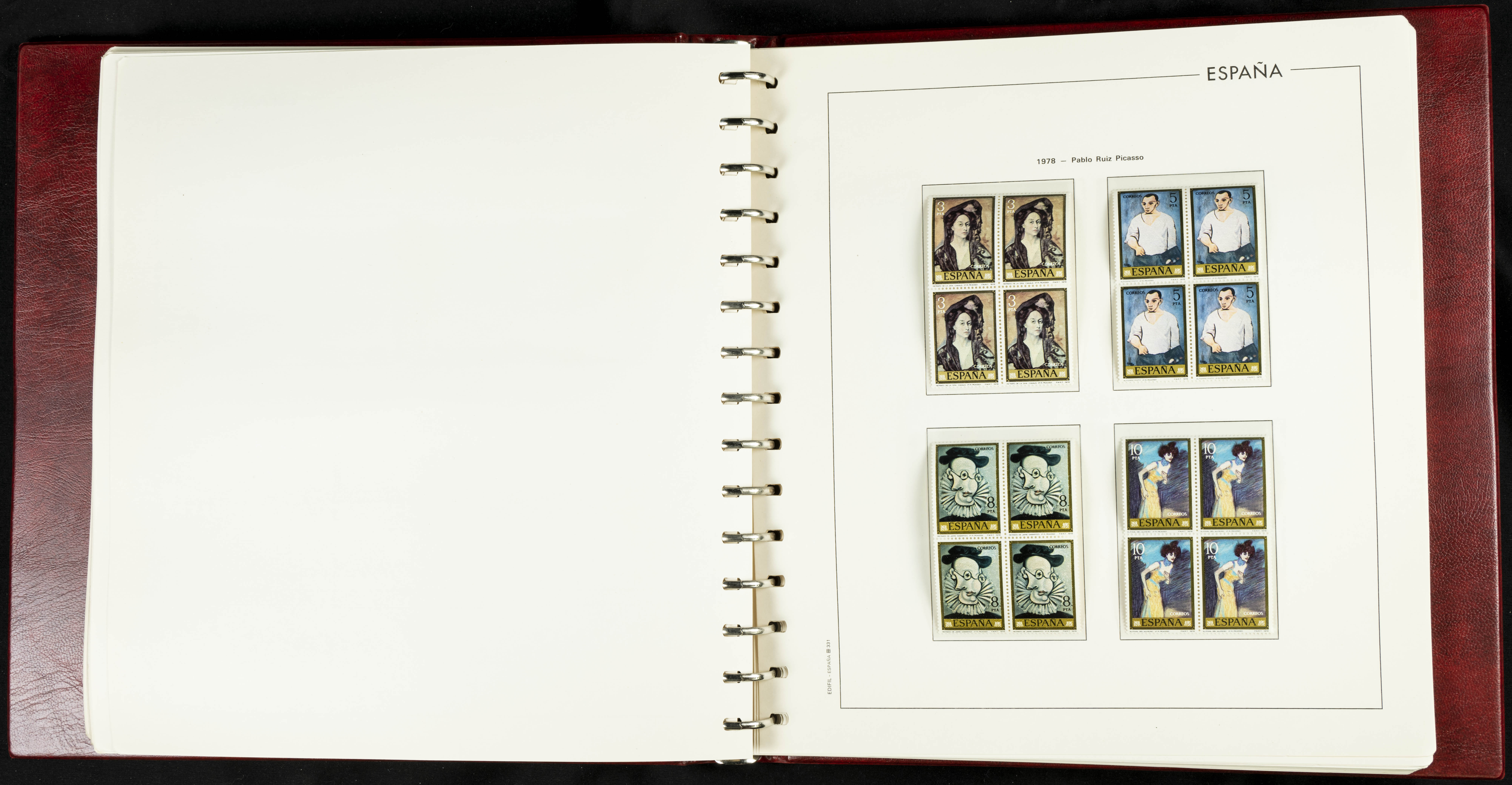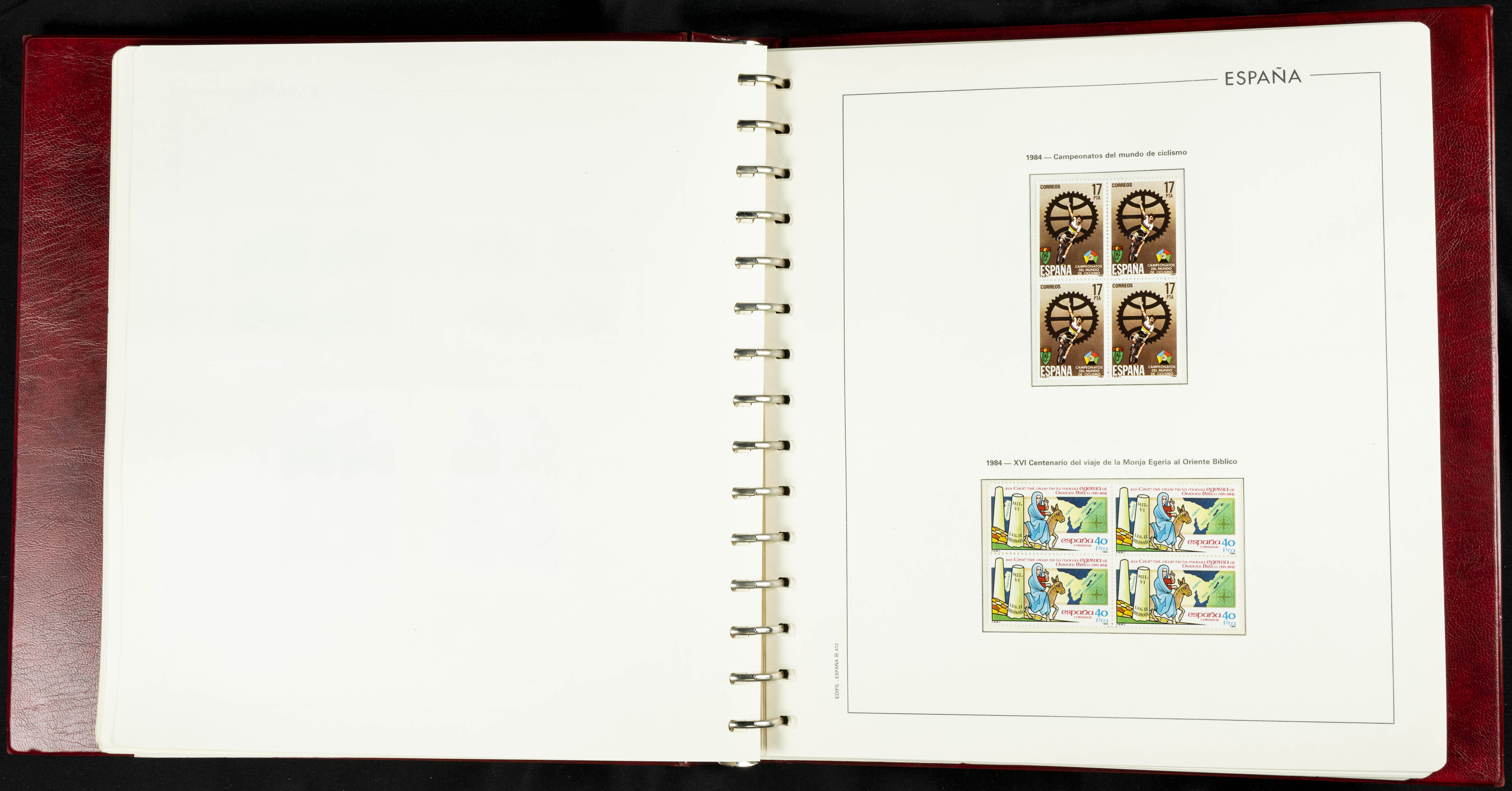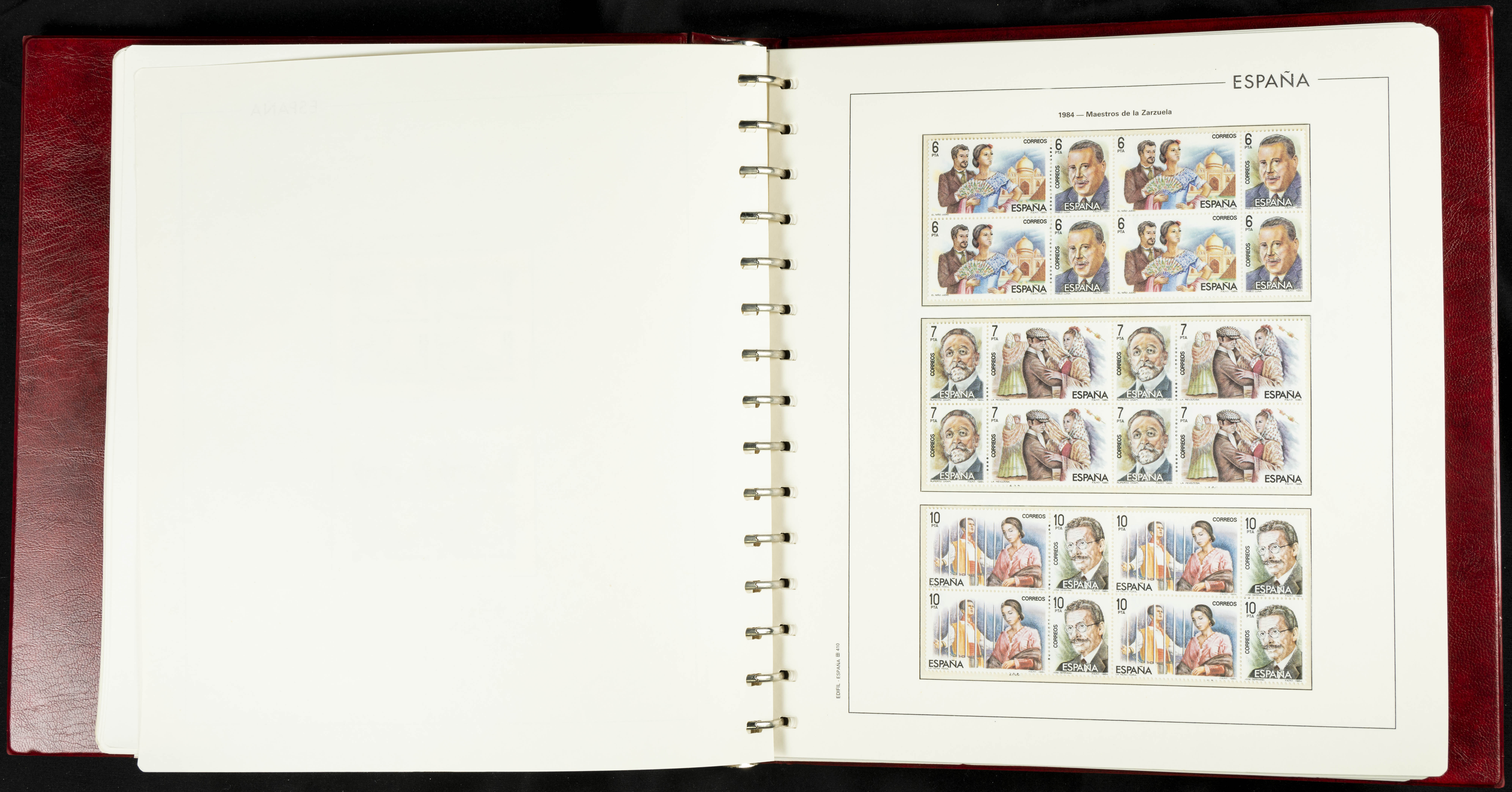 ★★(1976ca). Complete collection between 1976 and 1999, including the 2000 portion denominated exclusively in pesetas, in blocks of four (with a souvenir sheet), in mint condition (mounted in albums). HIGH CATALOGUE VALUE. TO BE EXAMINED.