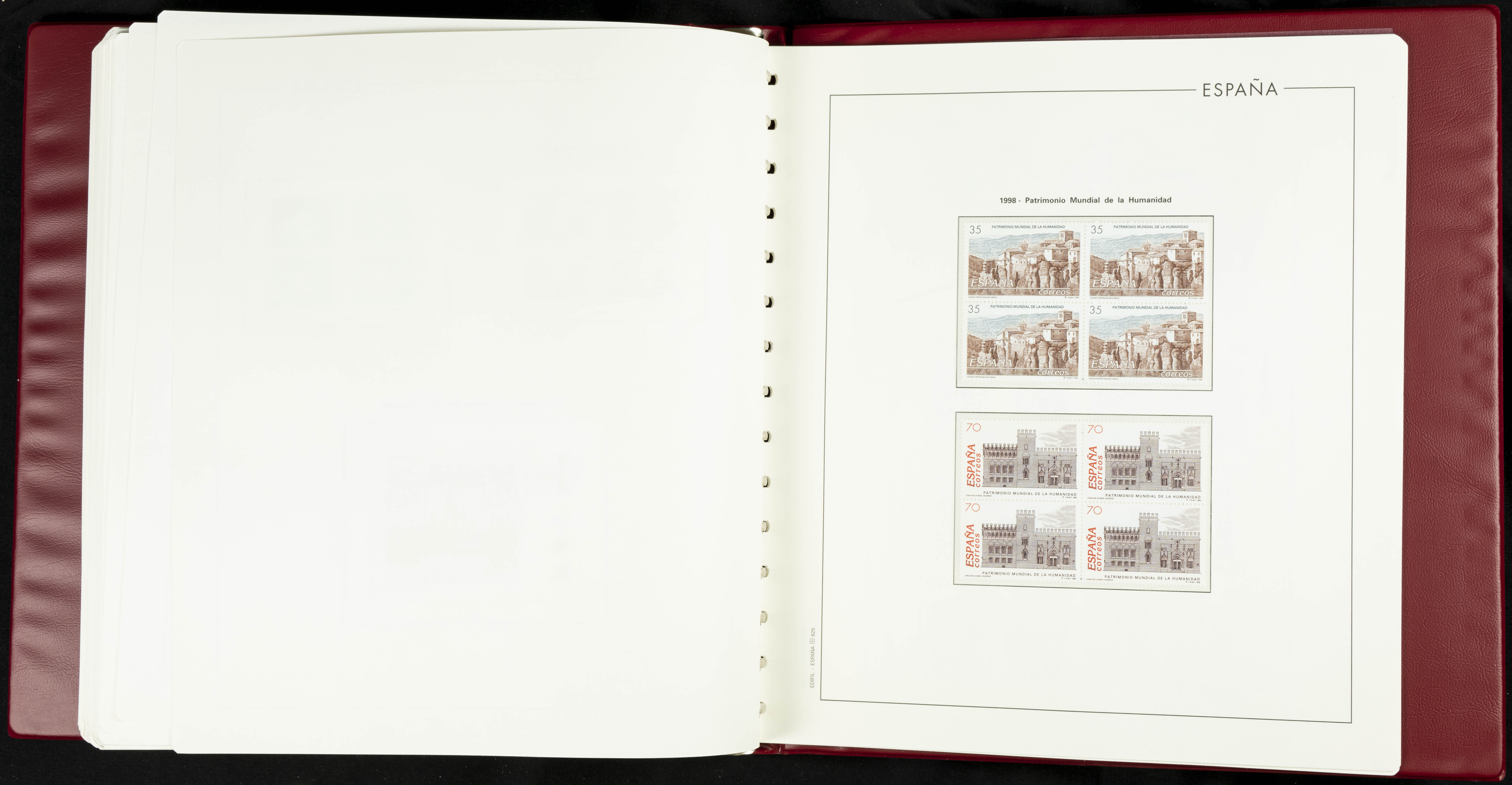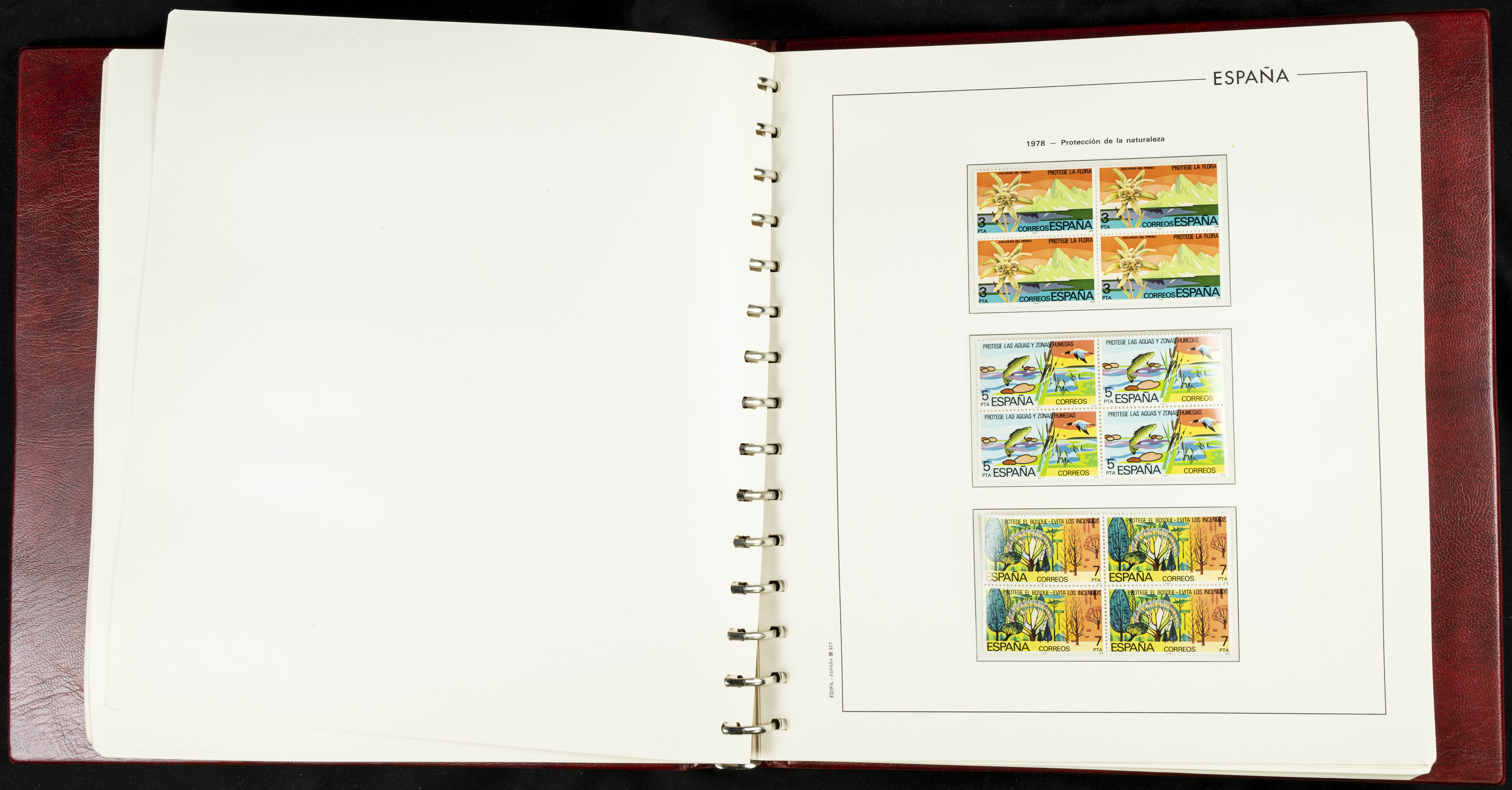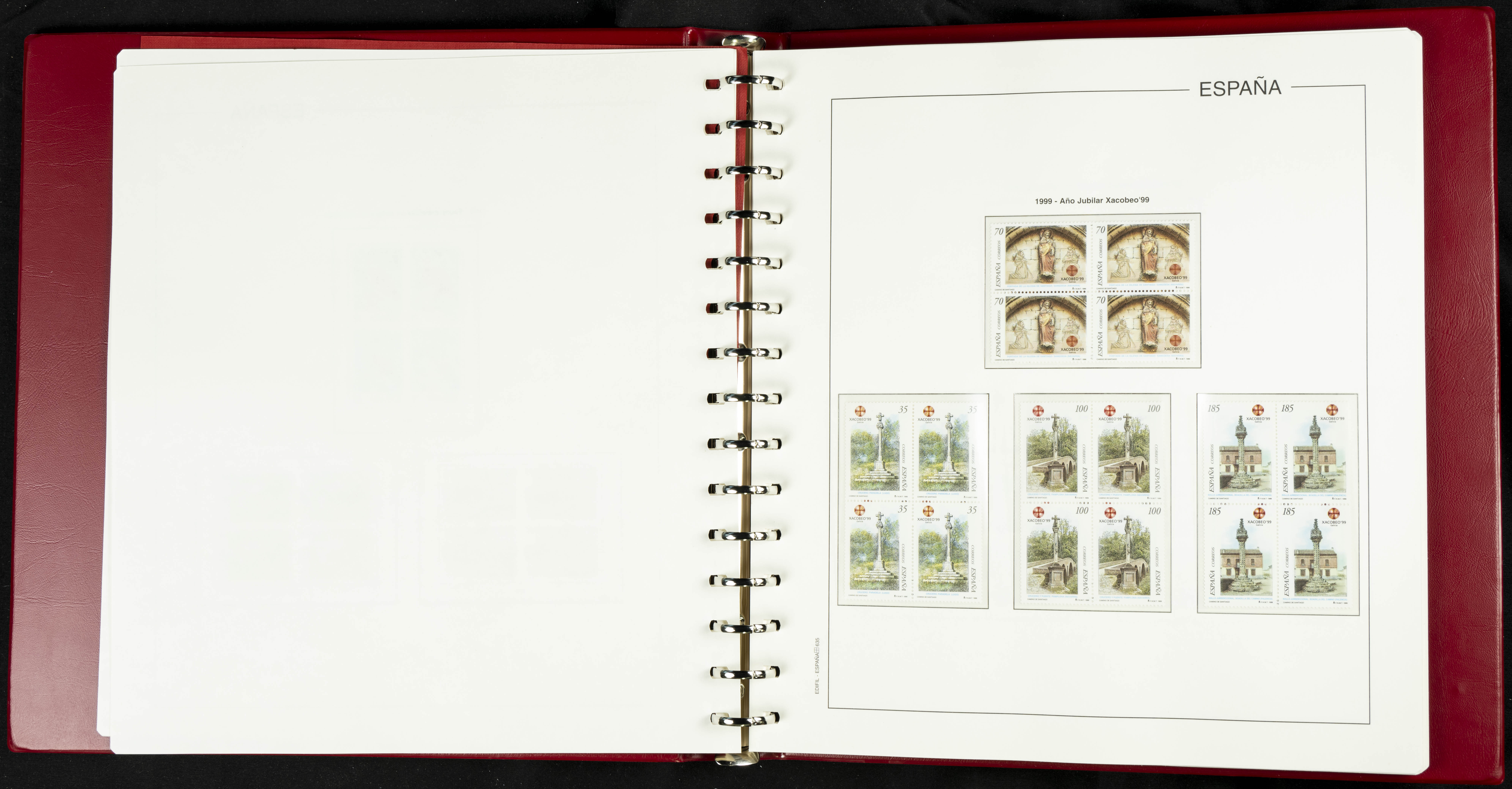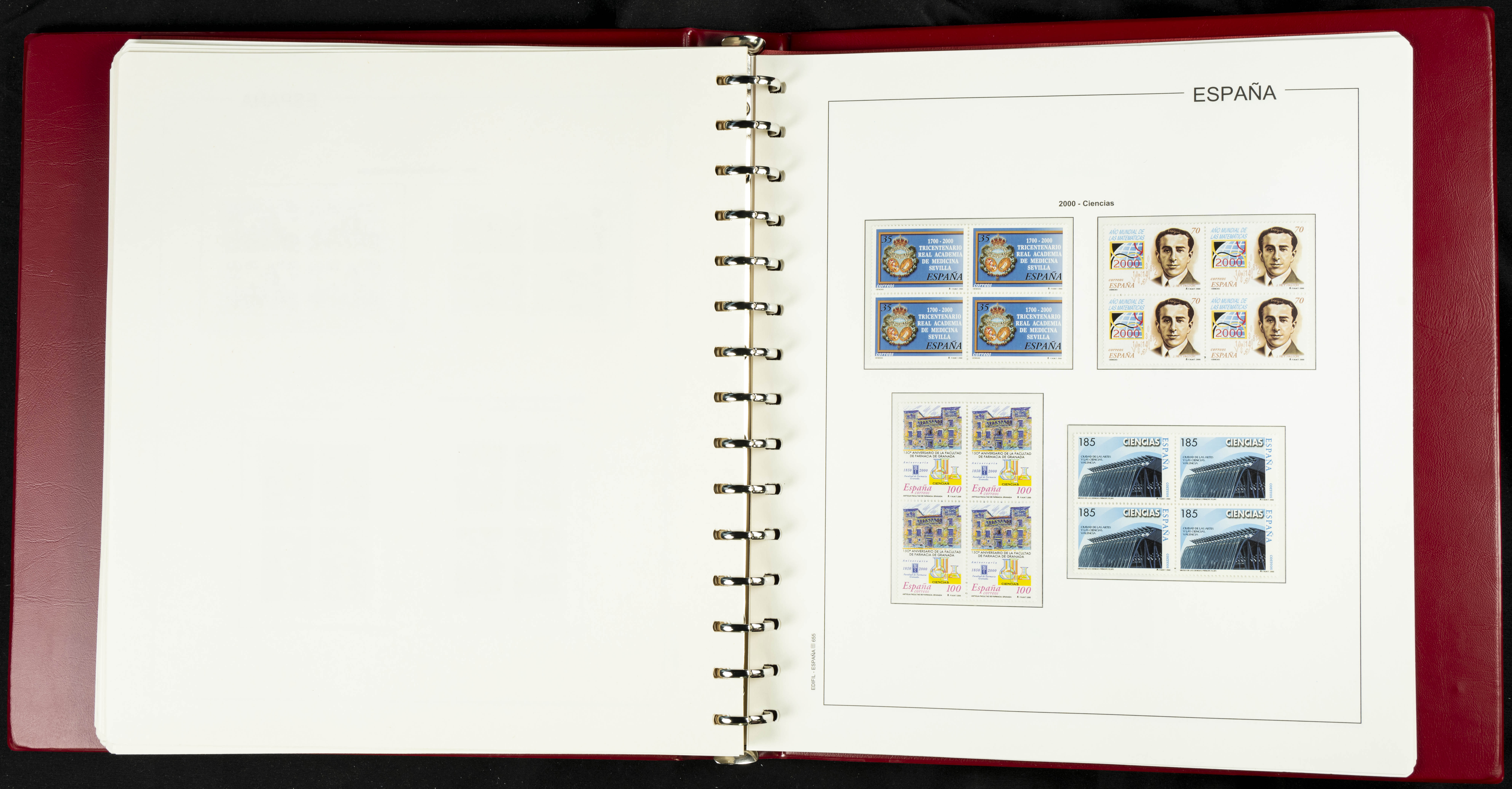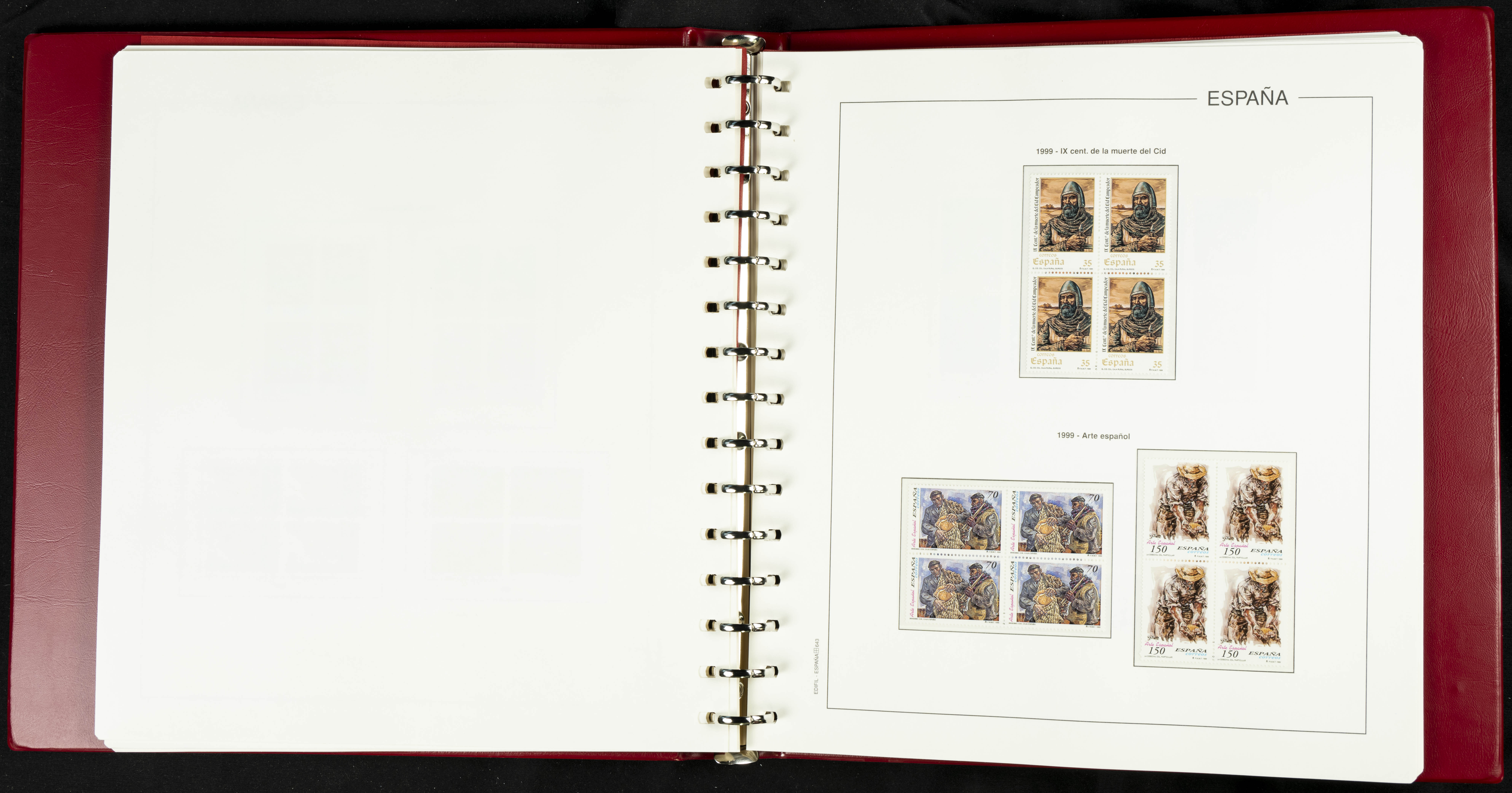 ★★(1976ca). Complete collection between 1976 and 1999, including the 2000 portion denominated exclusively in pesetas, in blocks of four (with a souvenir sheet), in mint condition (mounted in albums). HIGH CATALOGUE VALUE. TO BE EXAMINED.