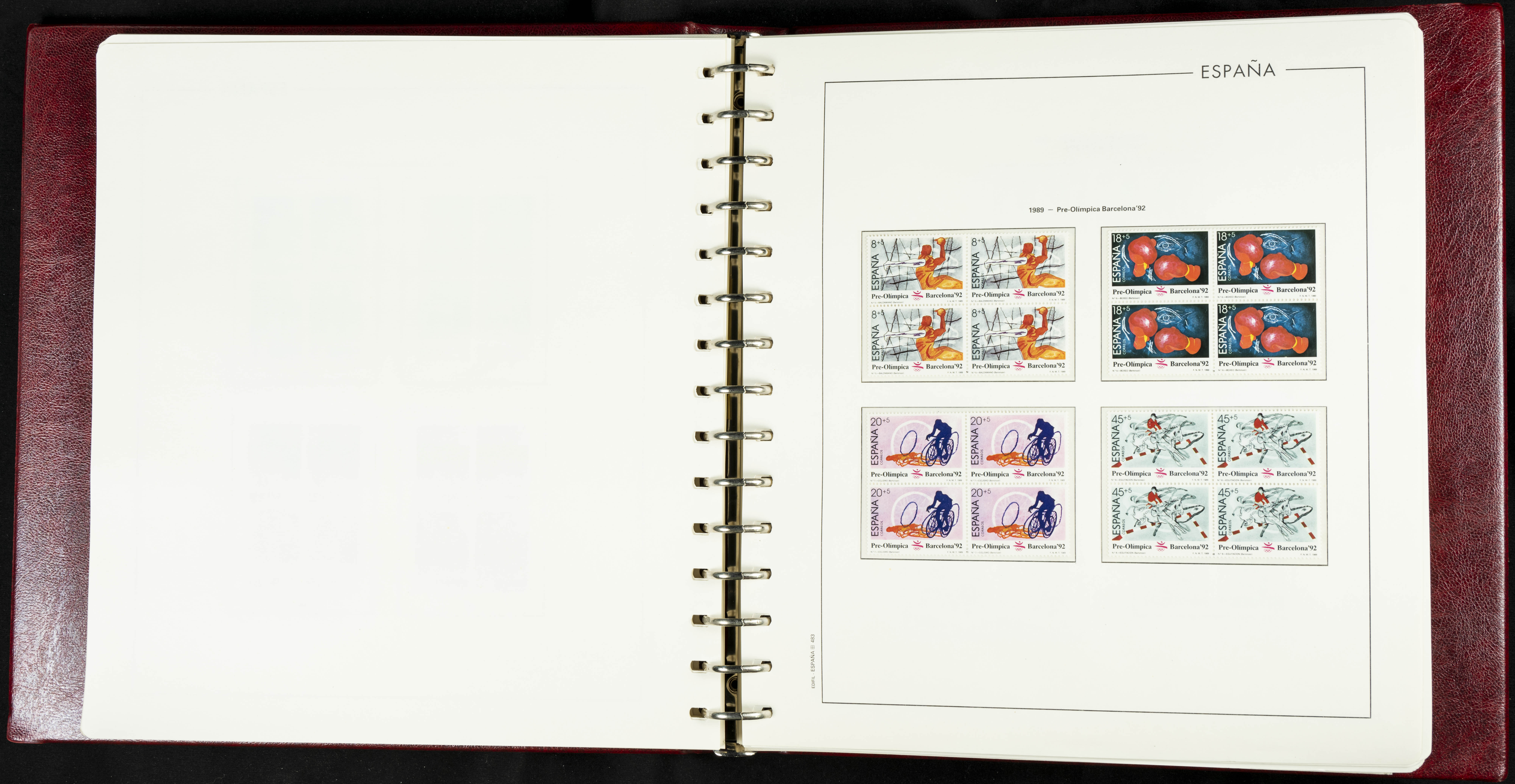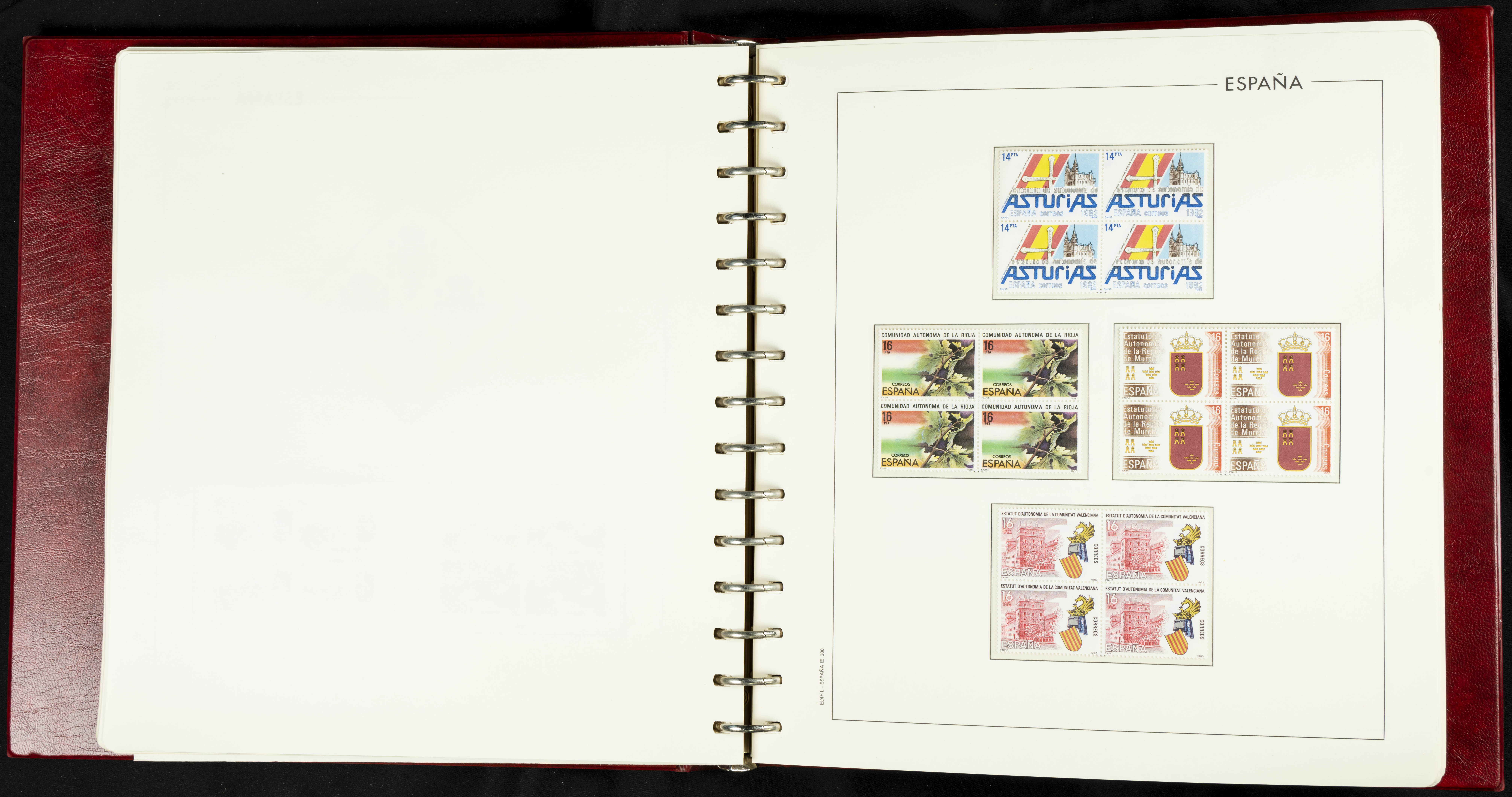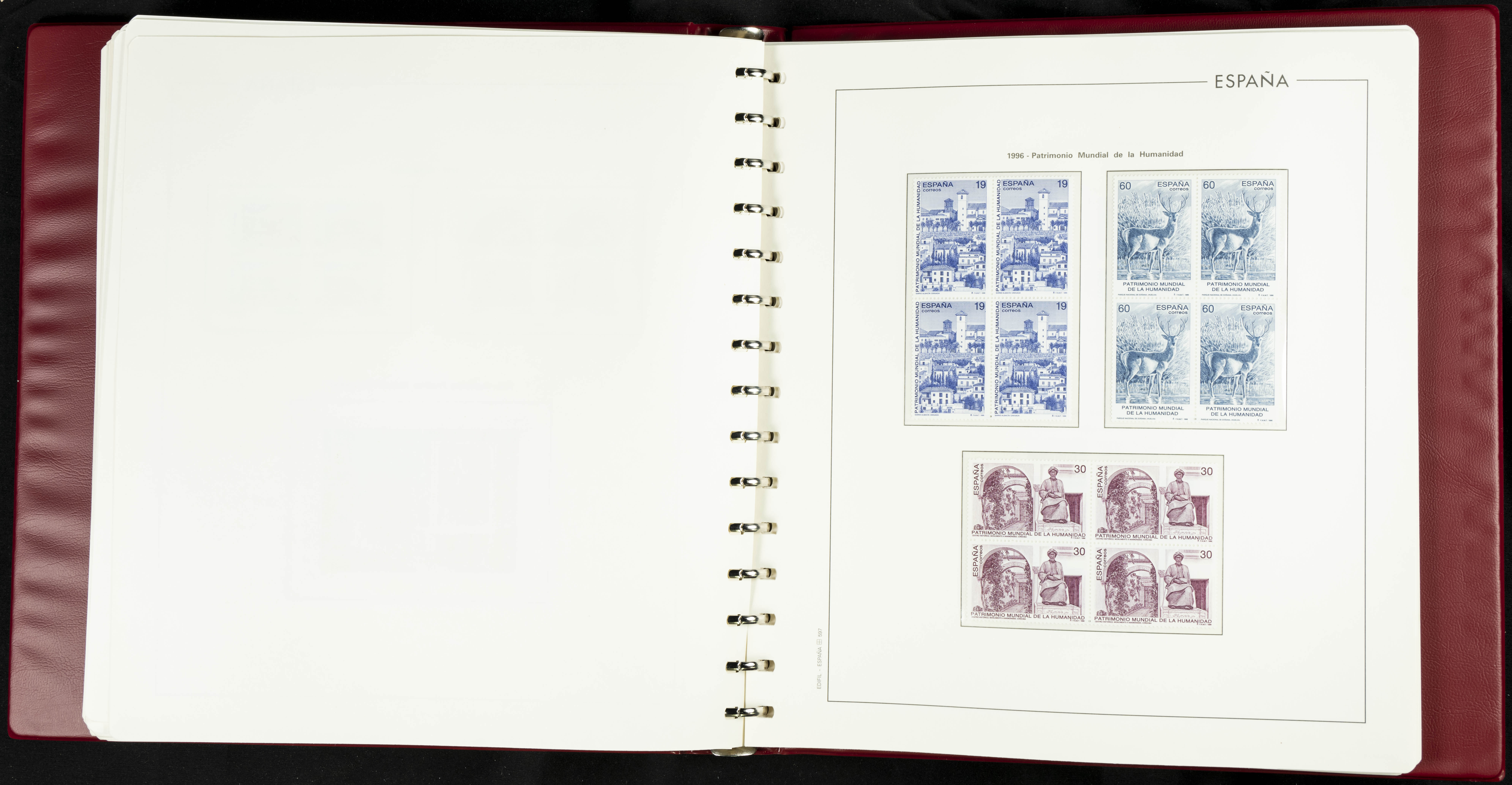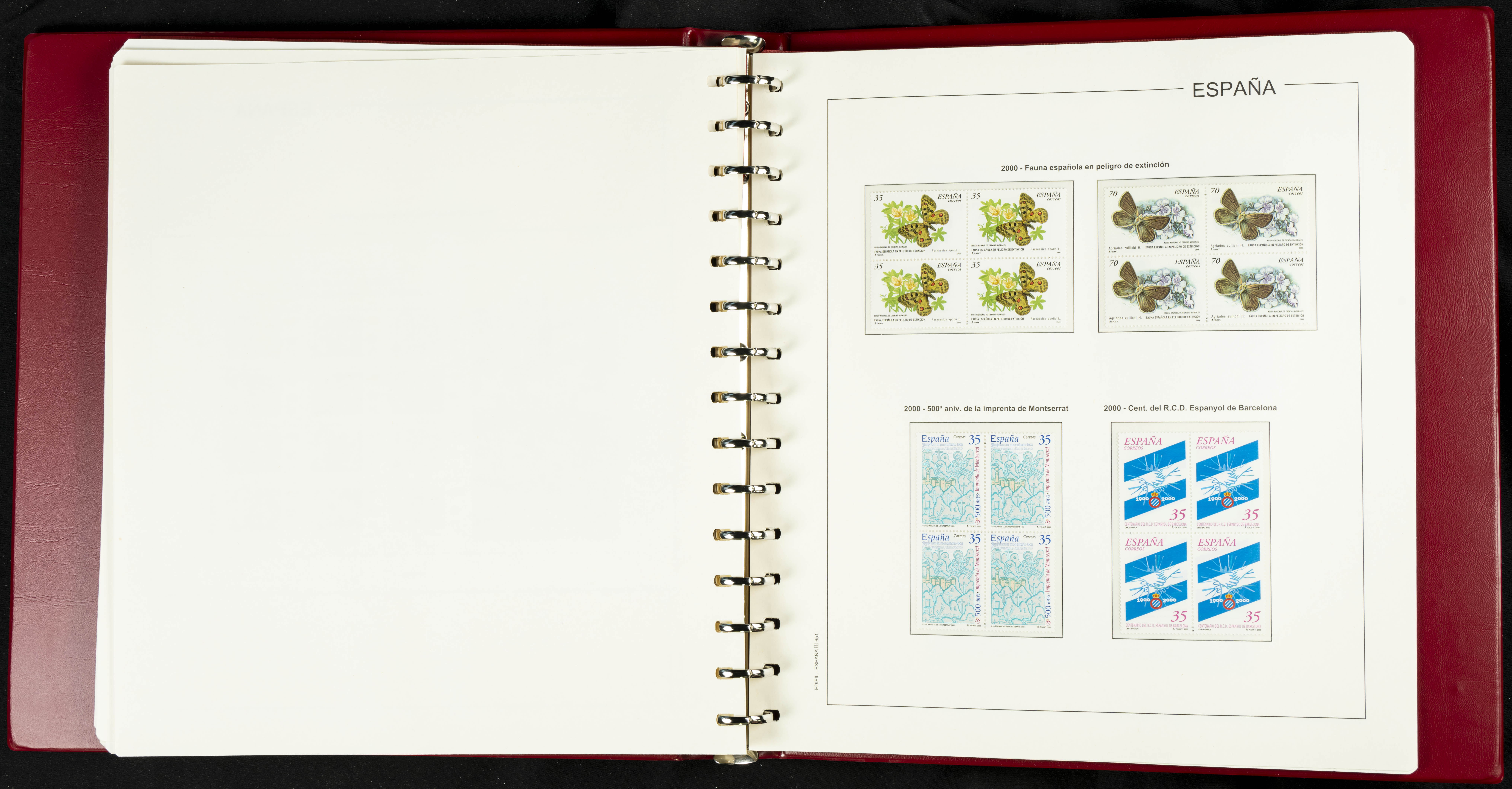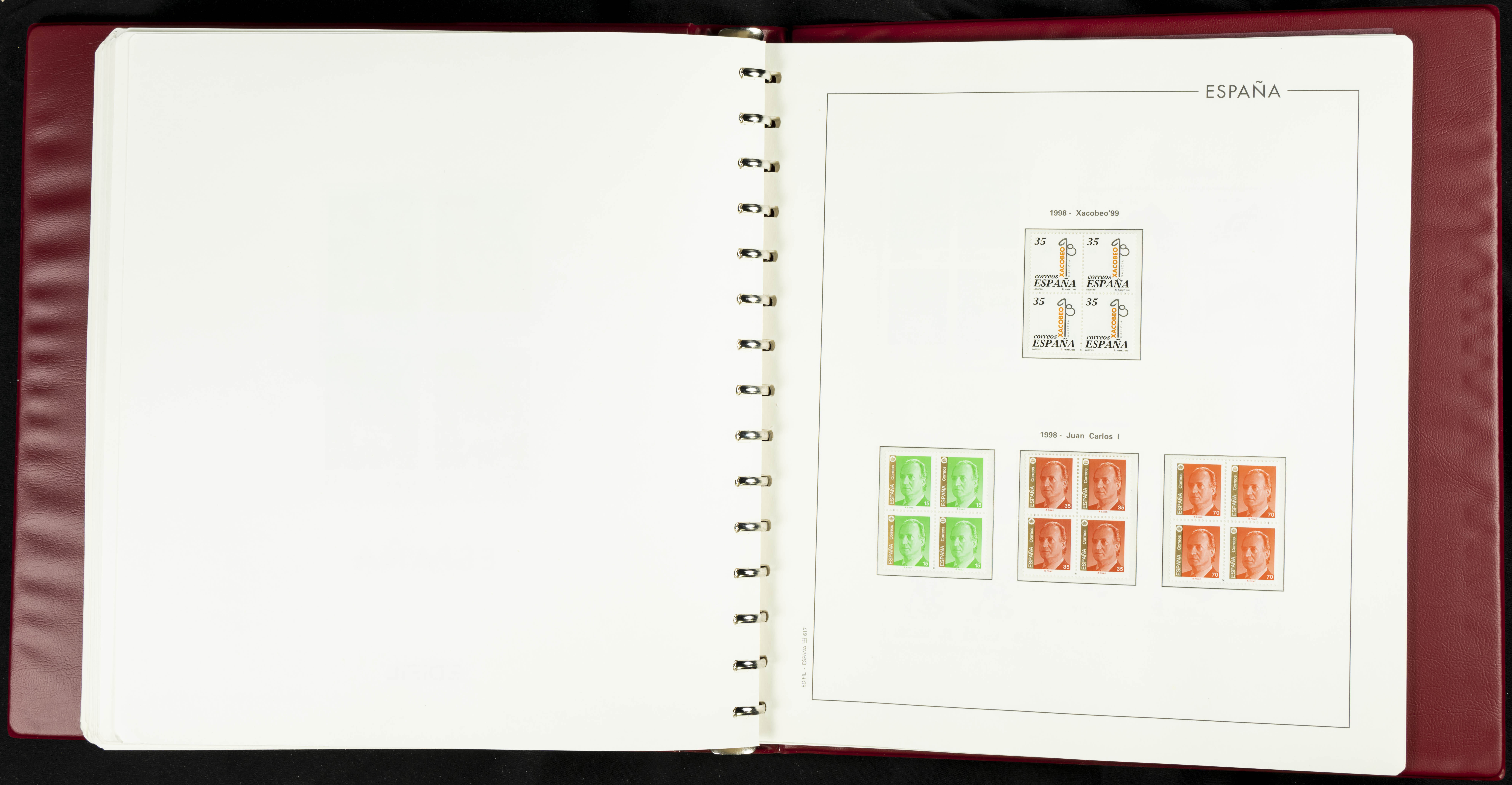 ★★(1976ca). Complete collection between 1976 and 1999, including the 2000 portion denominated exclusively in pesetas, in blocks of four (with a souvenir sheet), in mint condition (mounted in albums). HIGH CATALOGUE VALUE. TO BE EXAMINED.