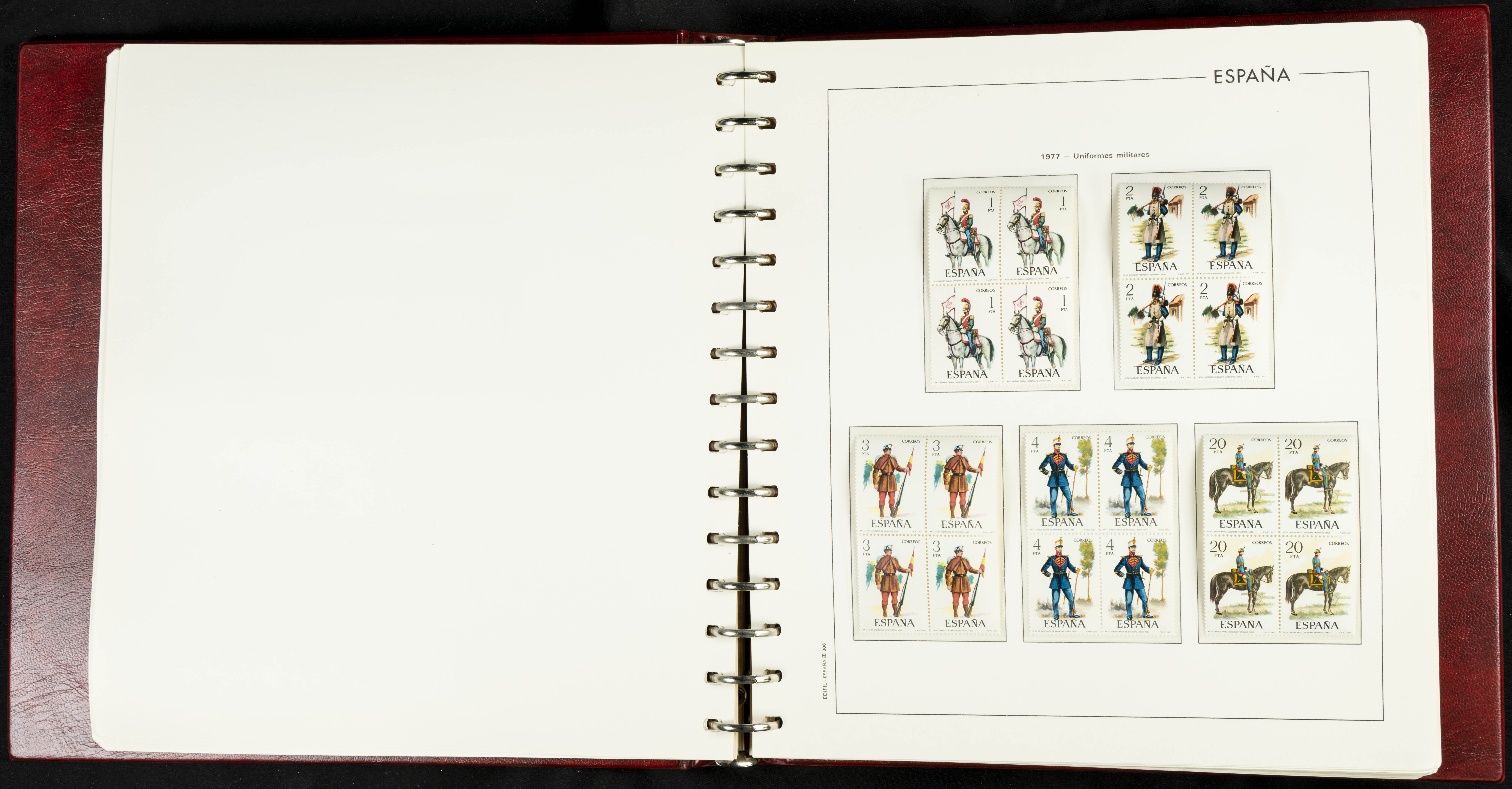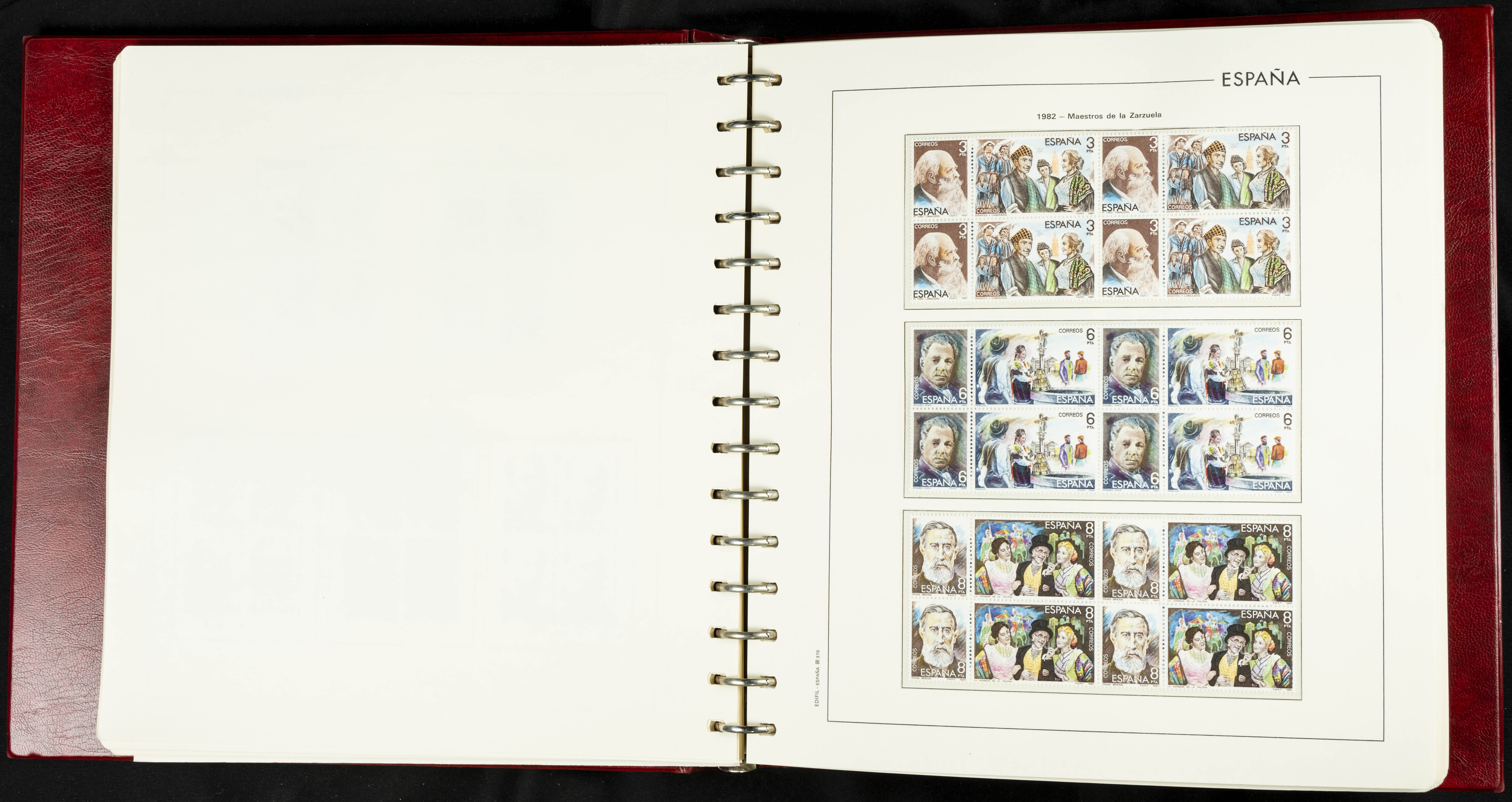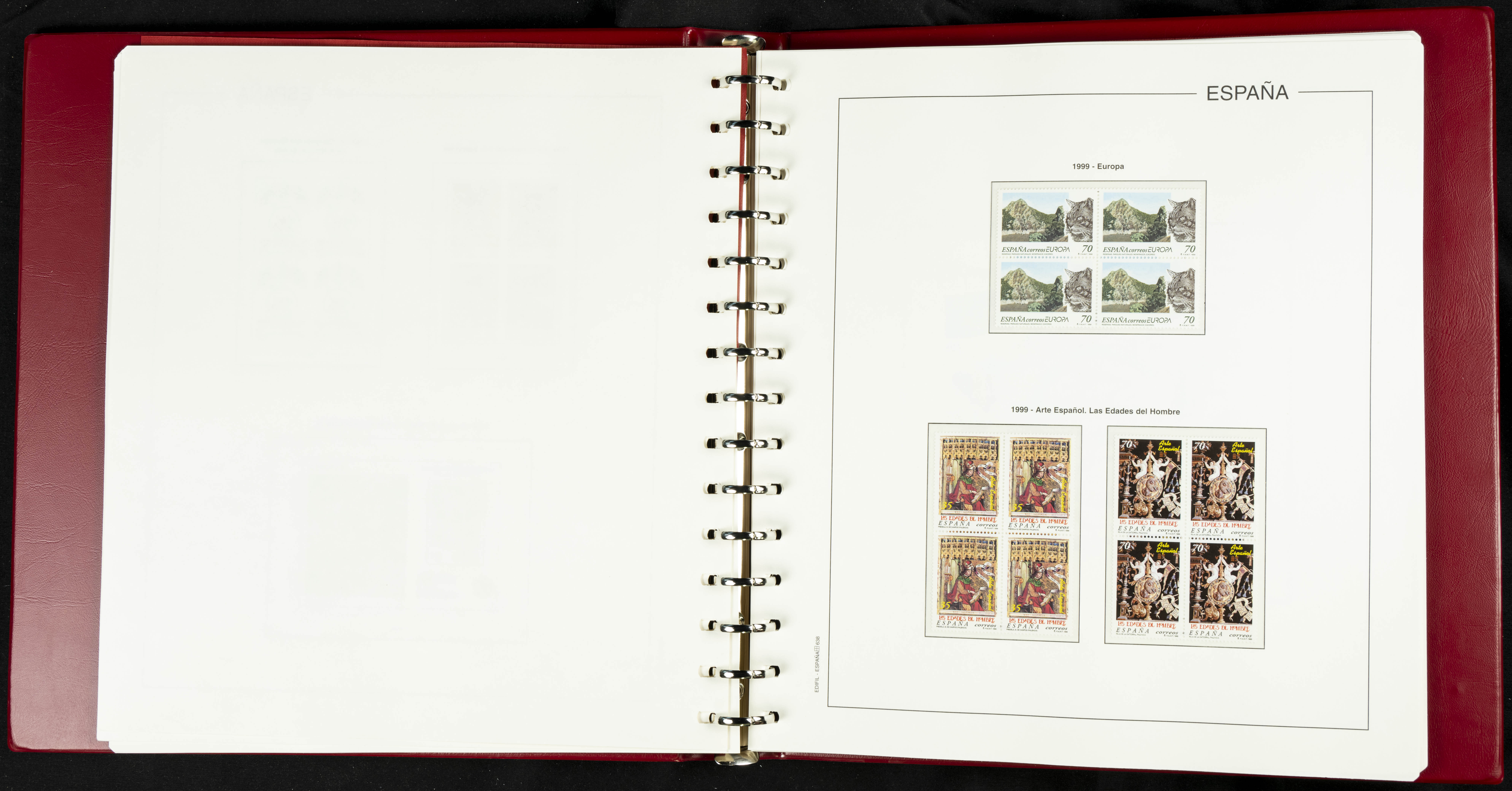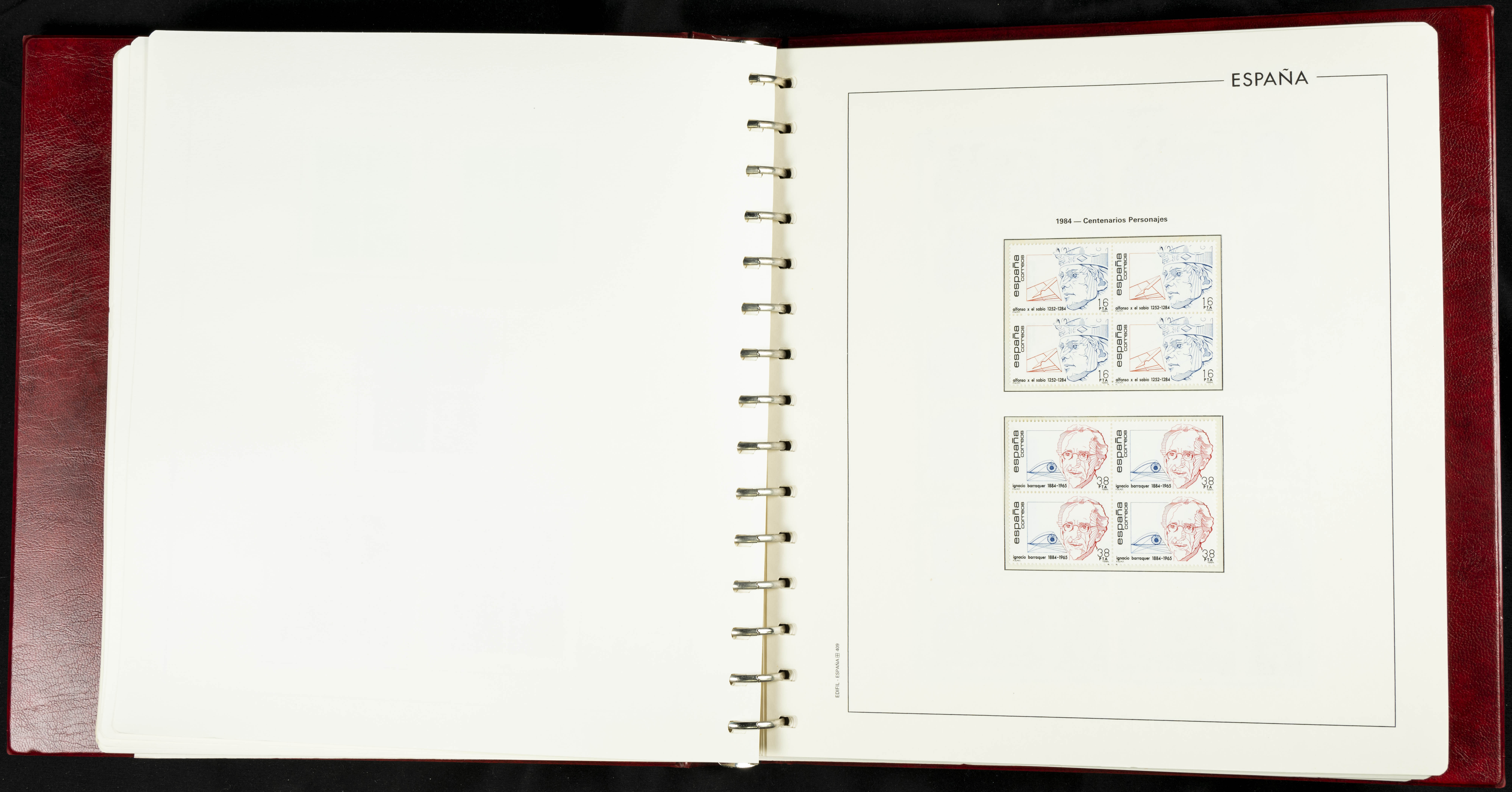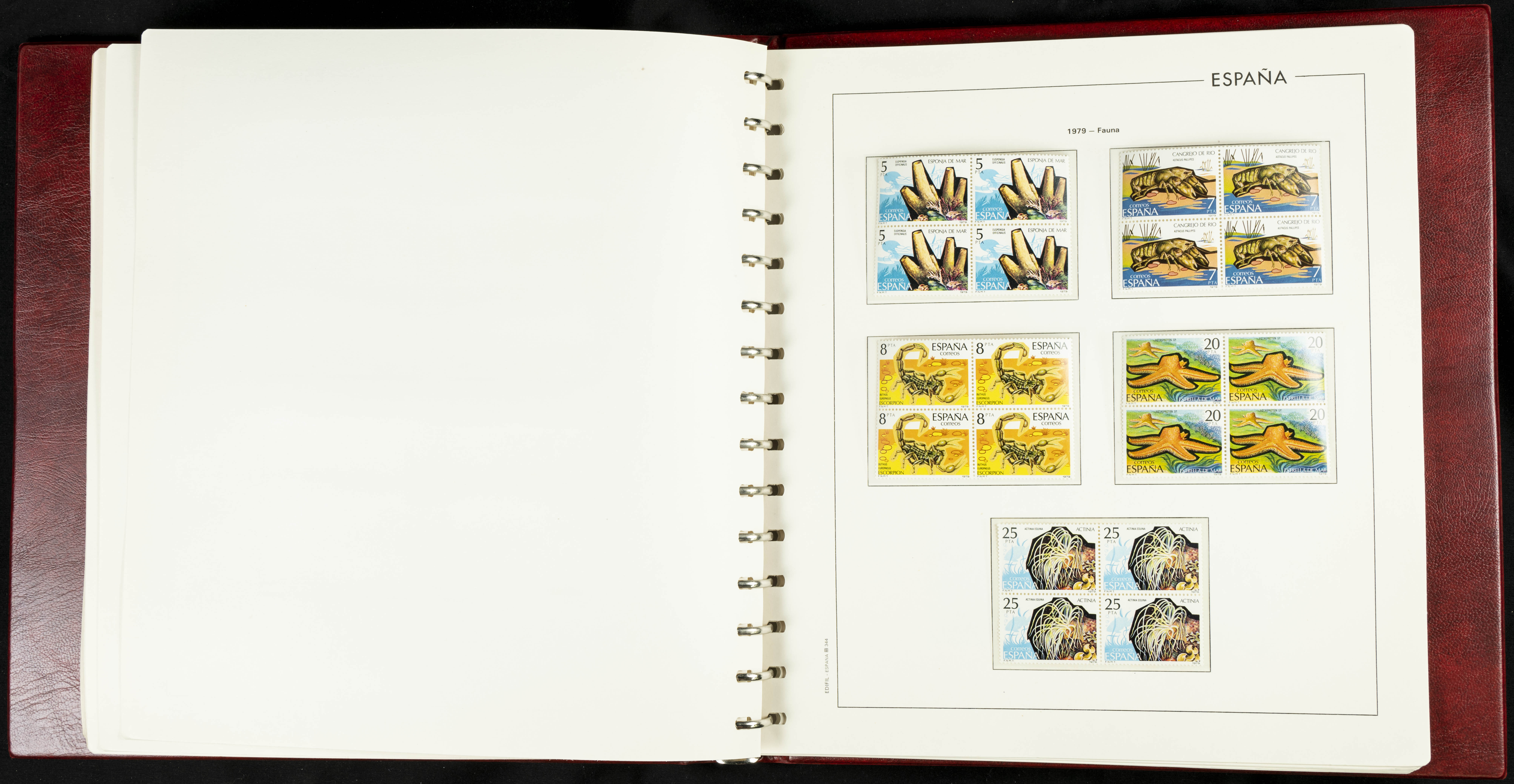 ★★(1976ca). Complete collection between 1976 and 1999, including the 2000 portion denominated exclusively in pesetas, in blocks of four (with a souvenir sheet), in mint condition (mounted in albums). HIGH CATALOGUE VALUE. TO BE EXAMINED.