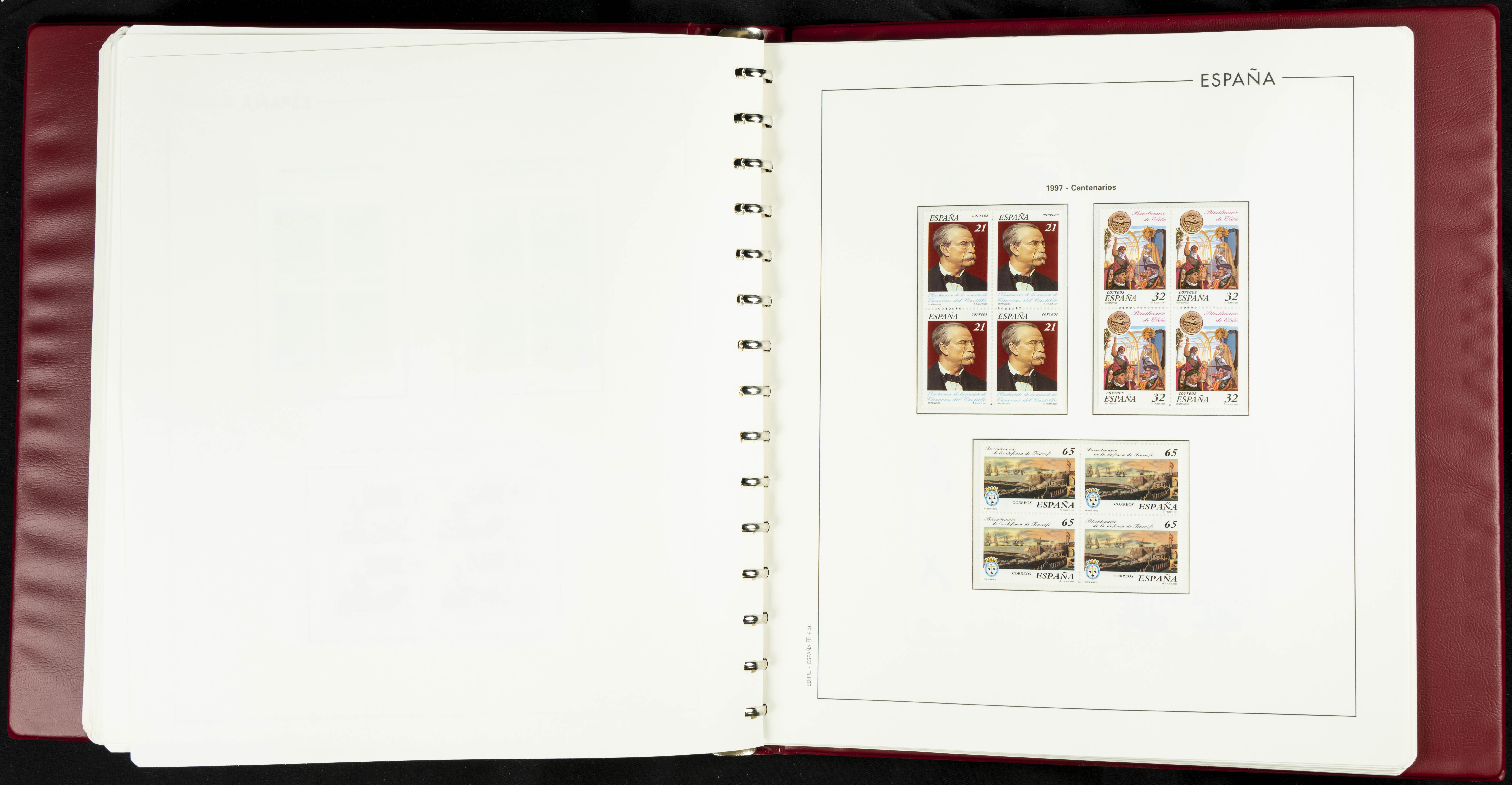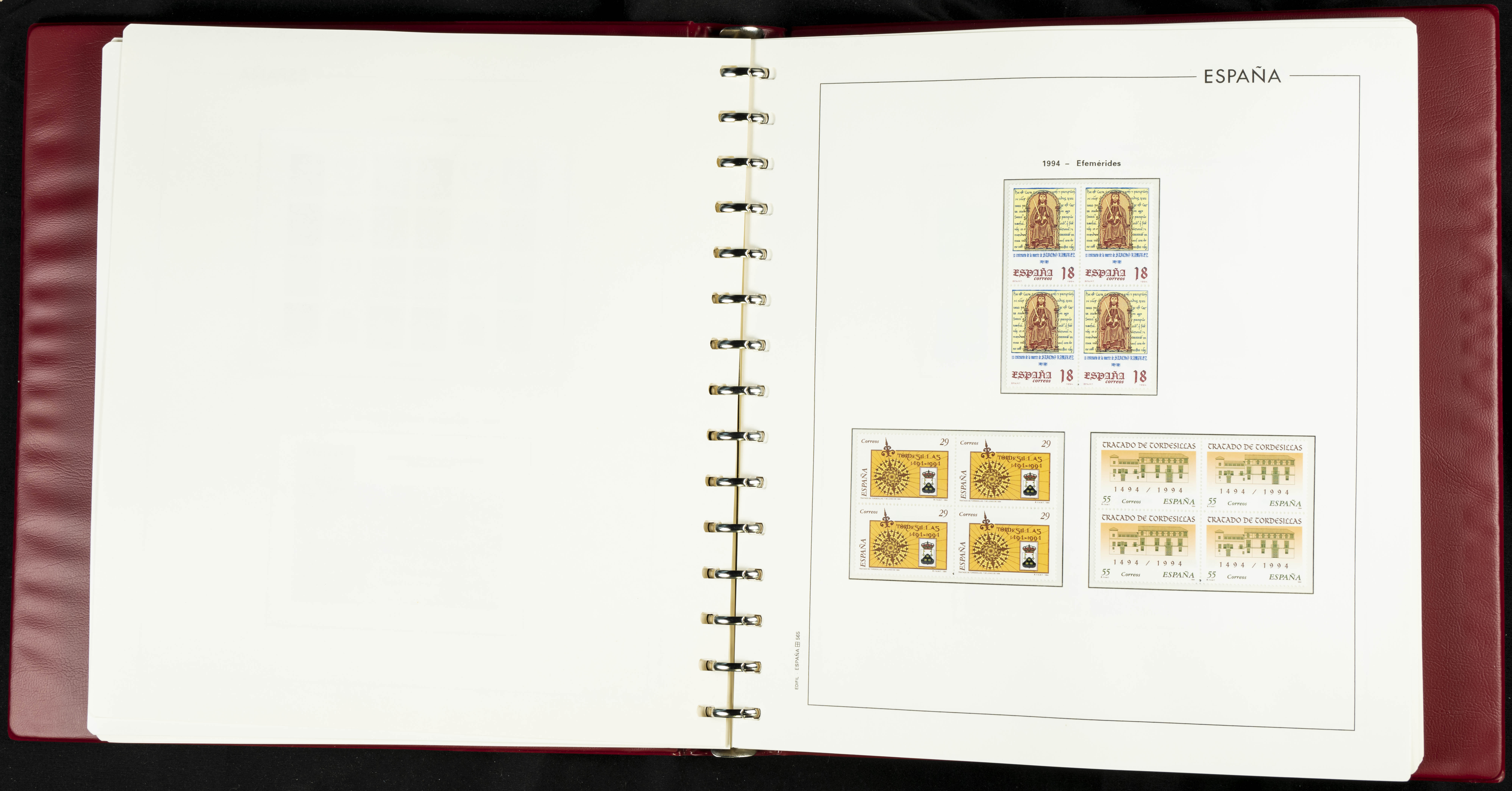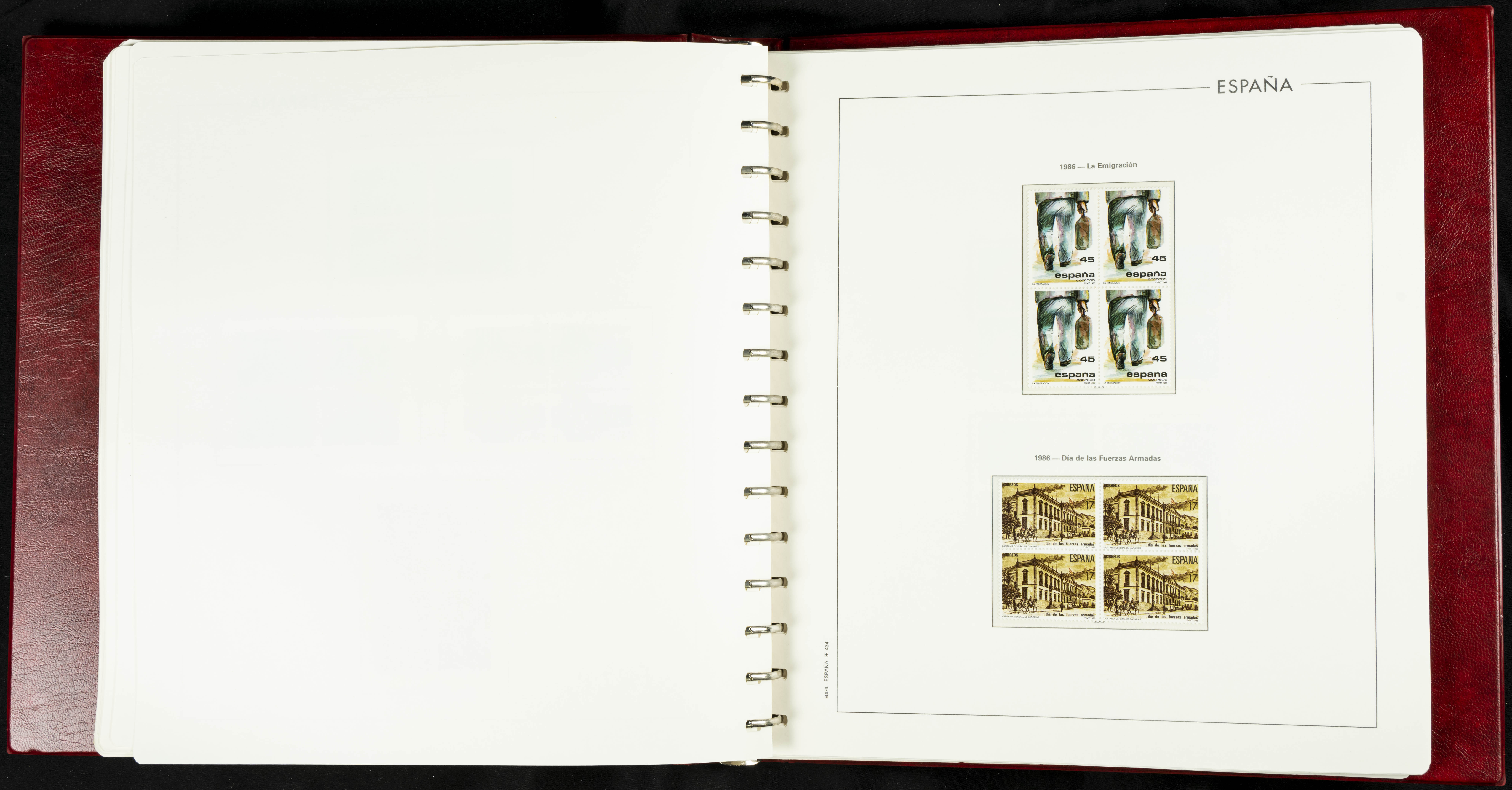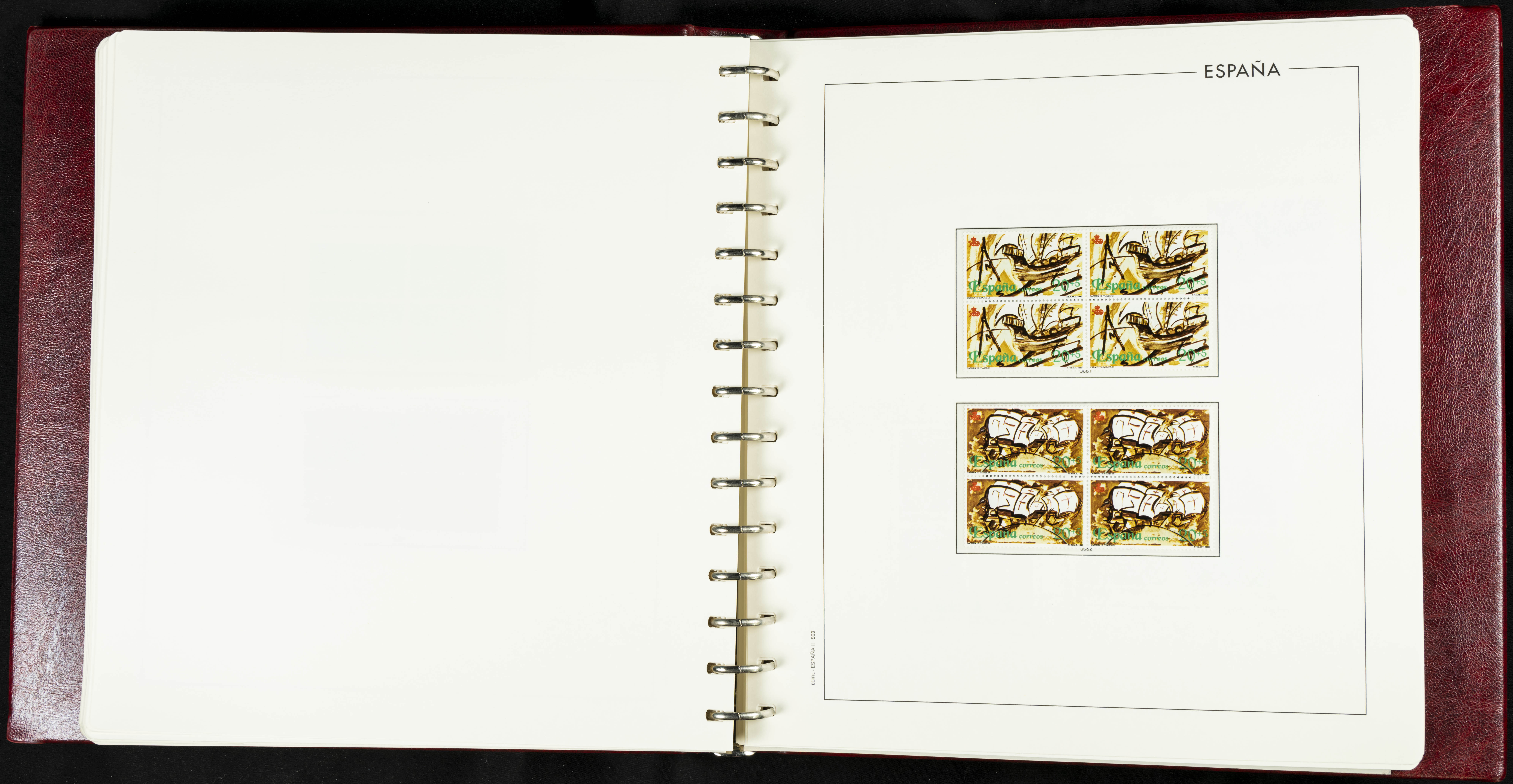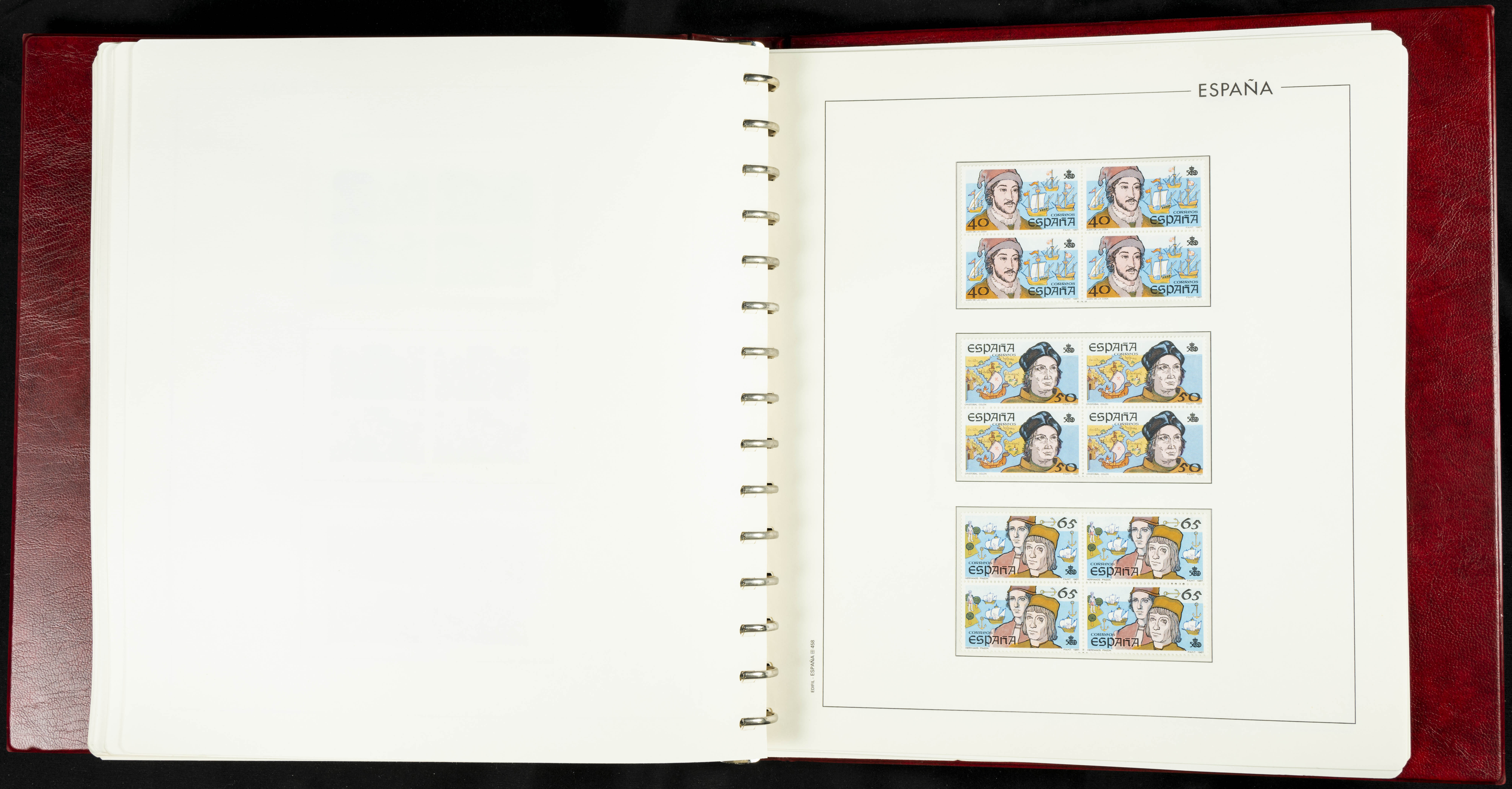 ★★(1976ca). Complete collection between 1976 and 1999, including the 2000 portion denominated exclusively in pesetas, in blocks of four (with a souvenir sheet), in mint condition (mounted in albums). HIGH CATALOGUE VALUE. TO BE EXAMINED.