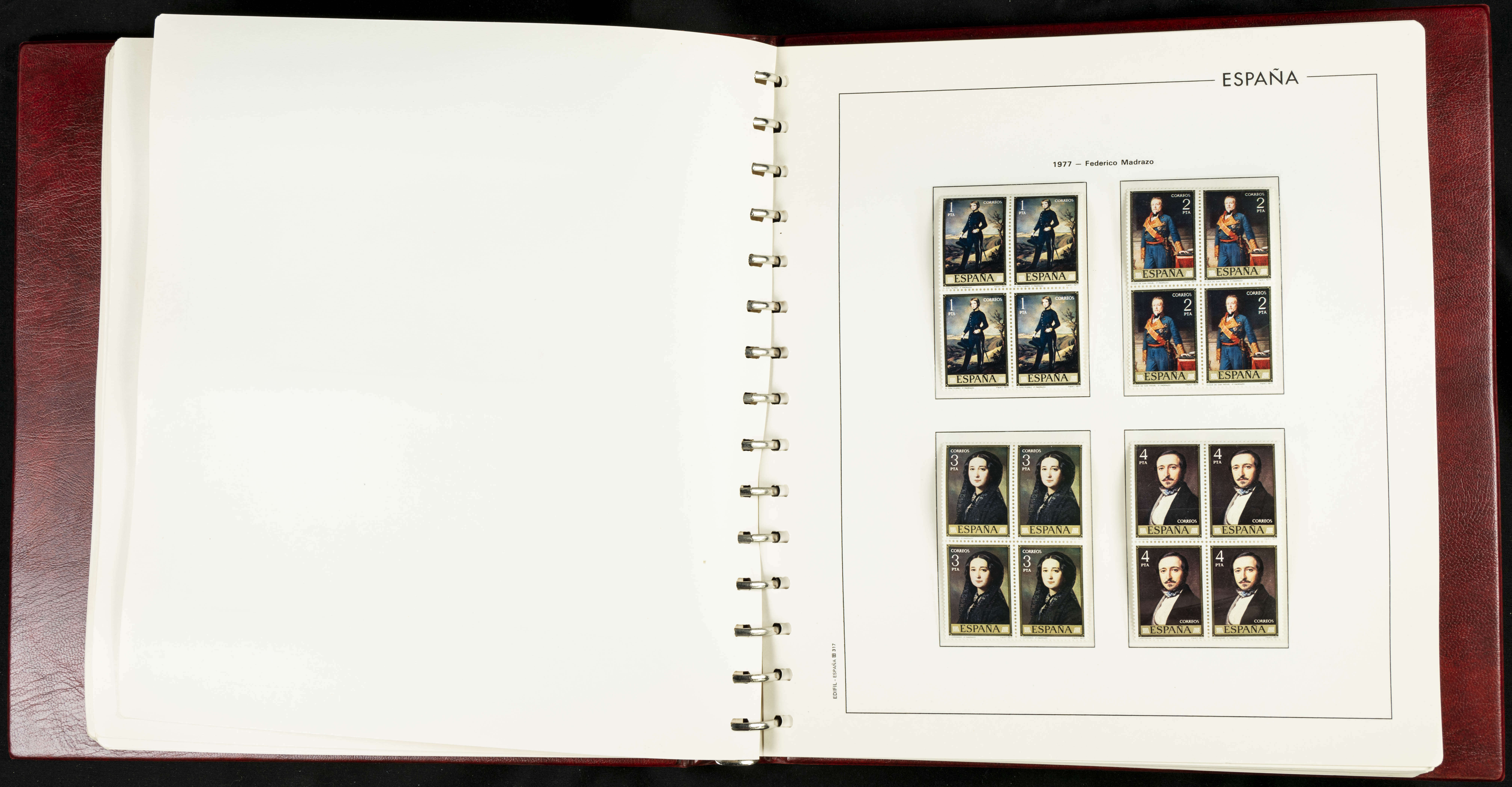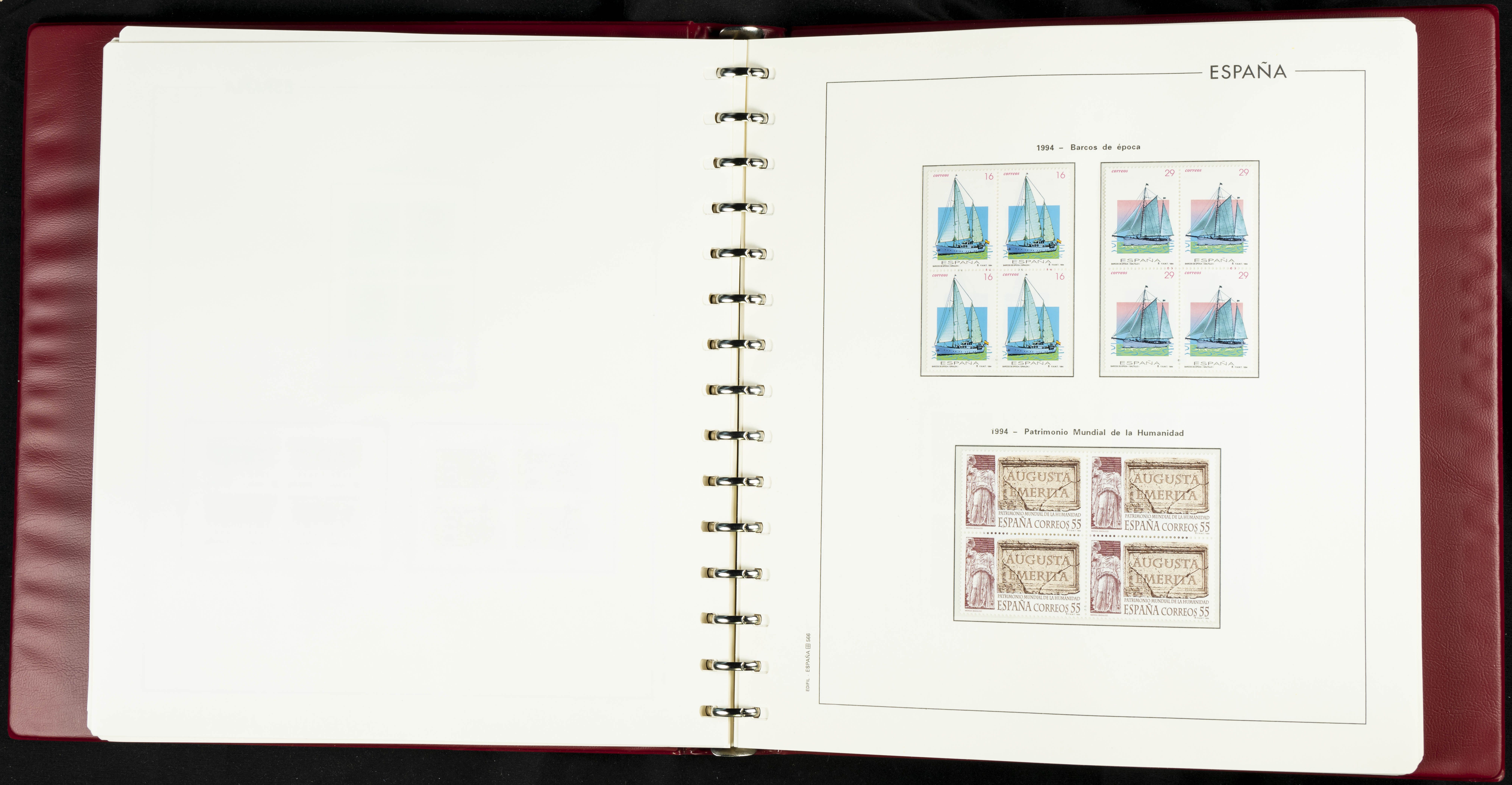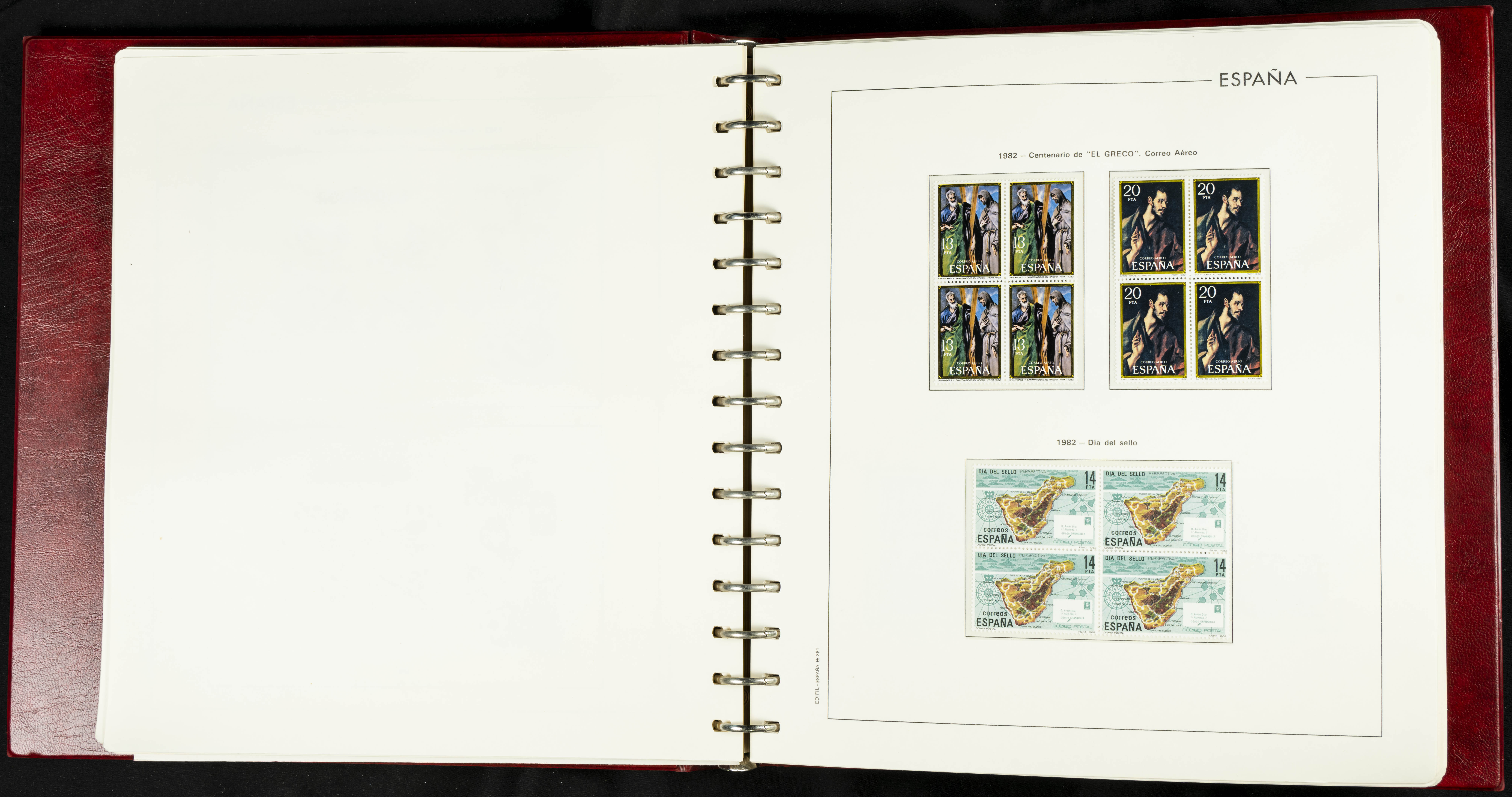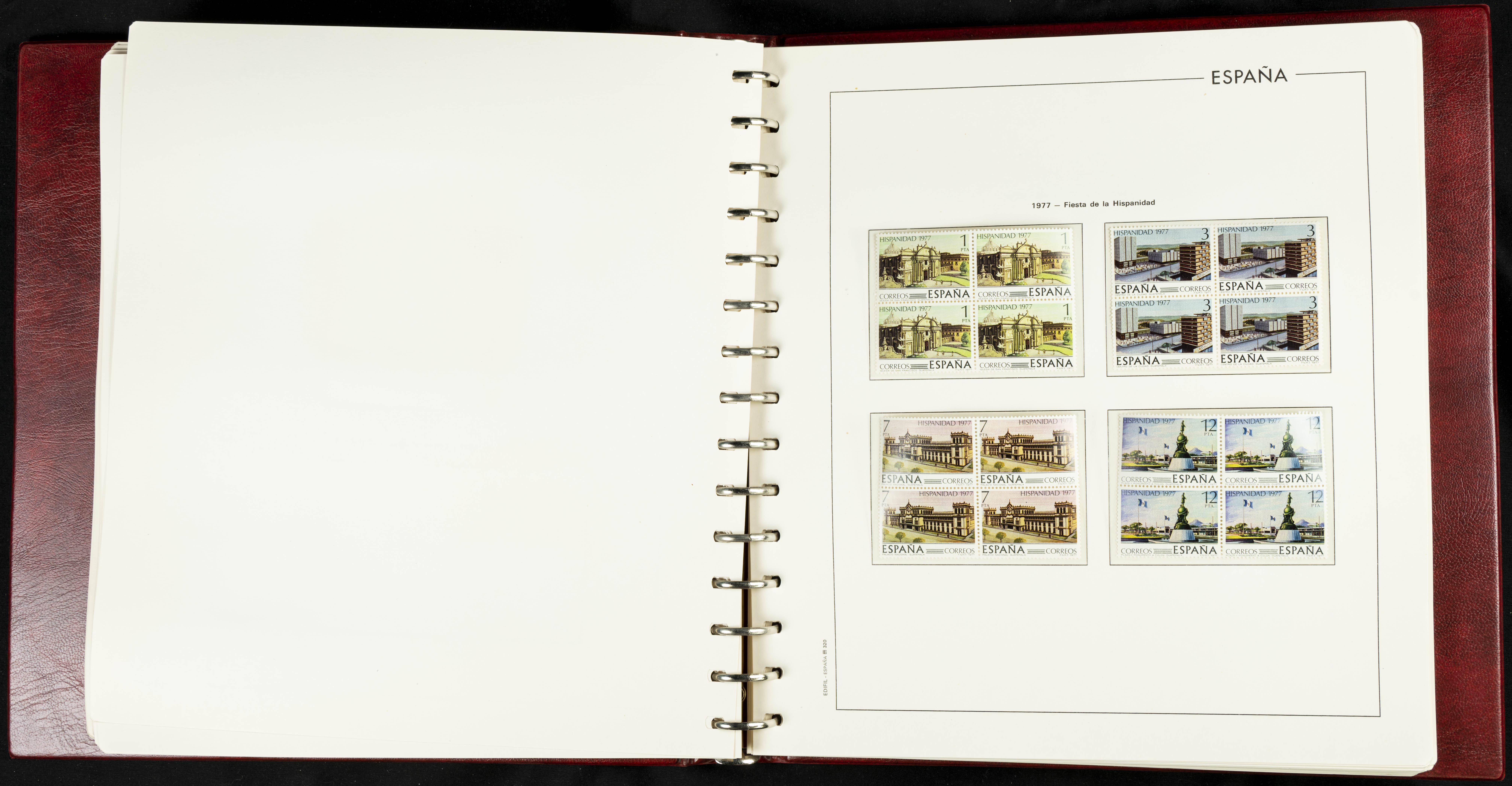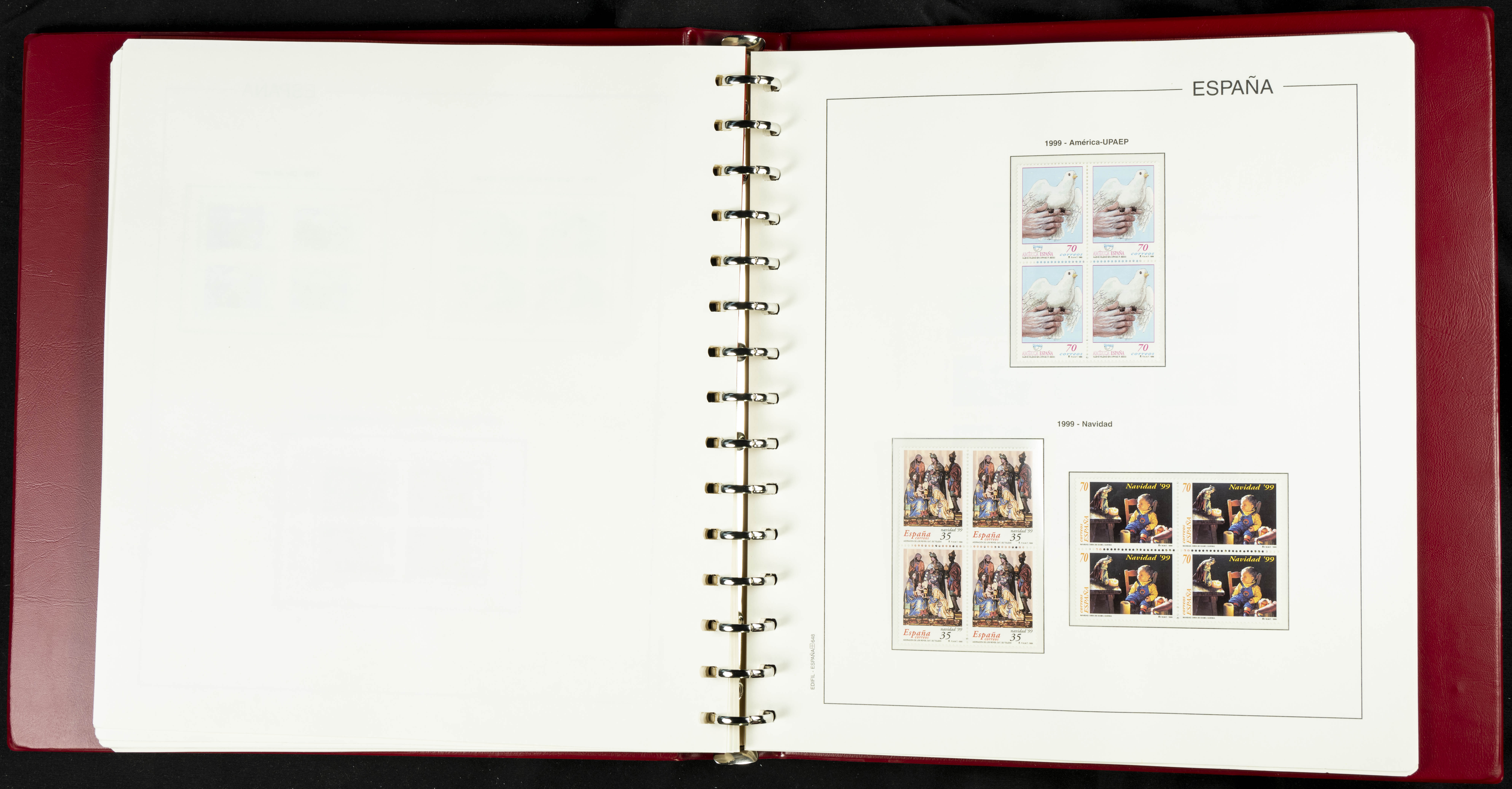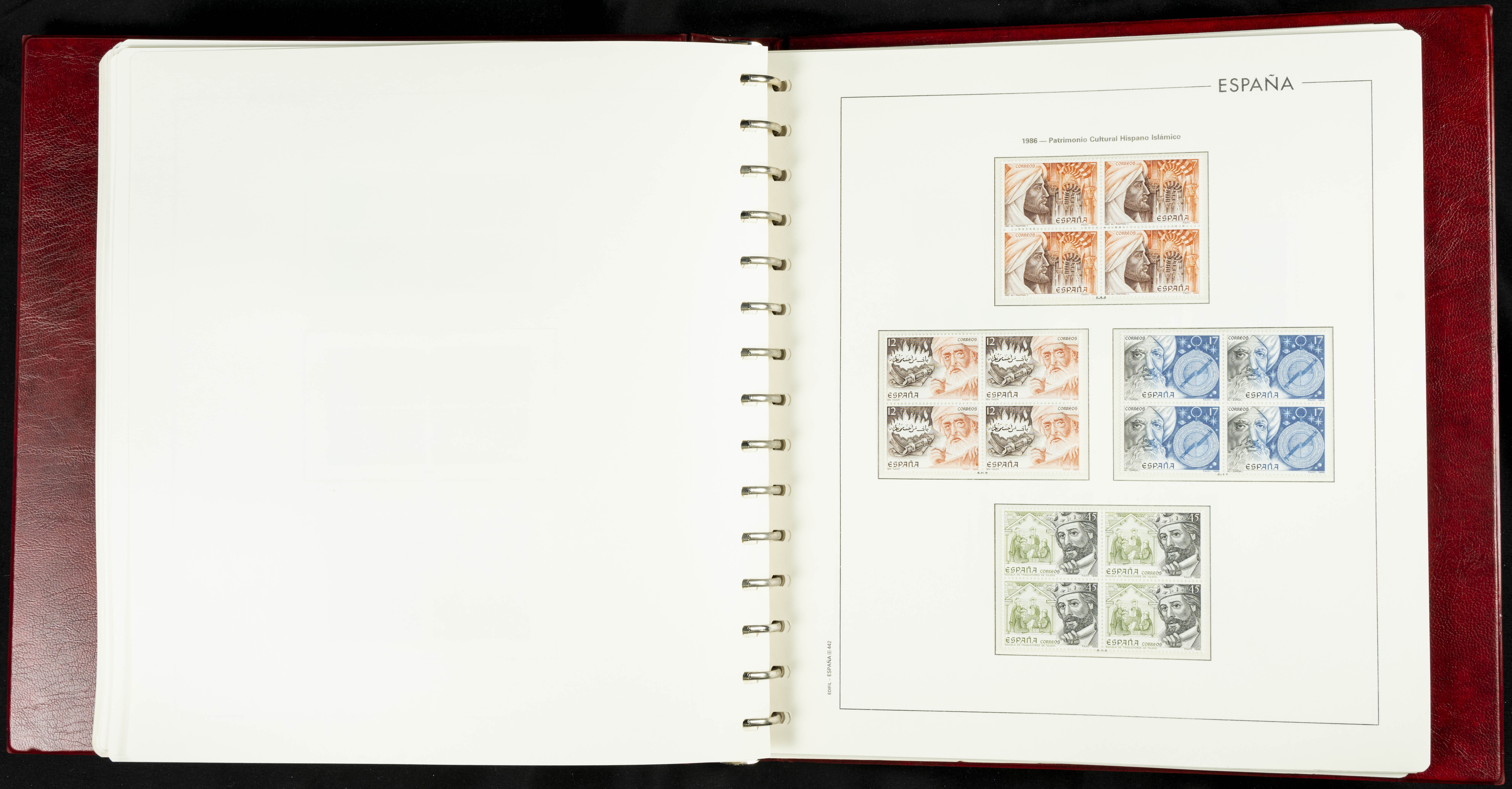 ★★(1976ca). Complete collection between 1976 and 1999, including the 2000 portion denominated exclusively in pesetas, in blocks of four (with a souvenir sheet), in mint condition (mounted in albums). HIGH CATALOGUE VALUE. TO BE EXAMINED.