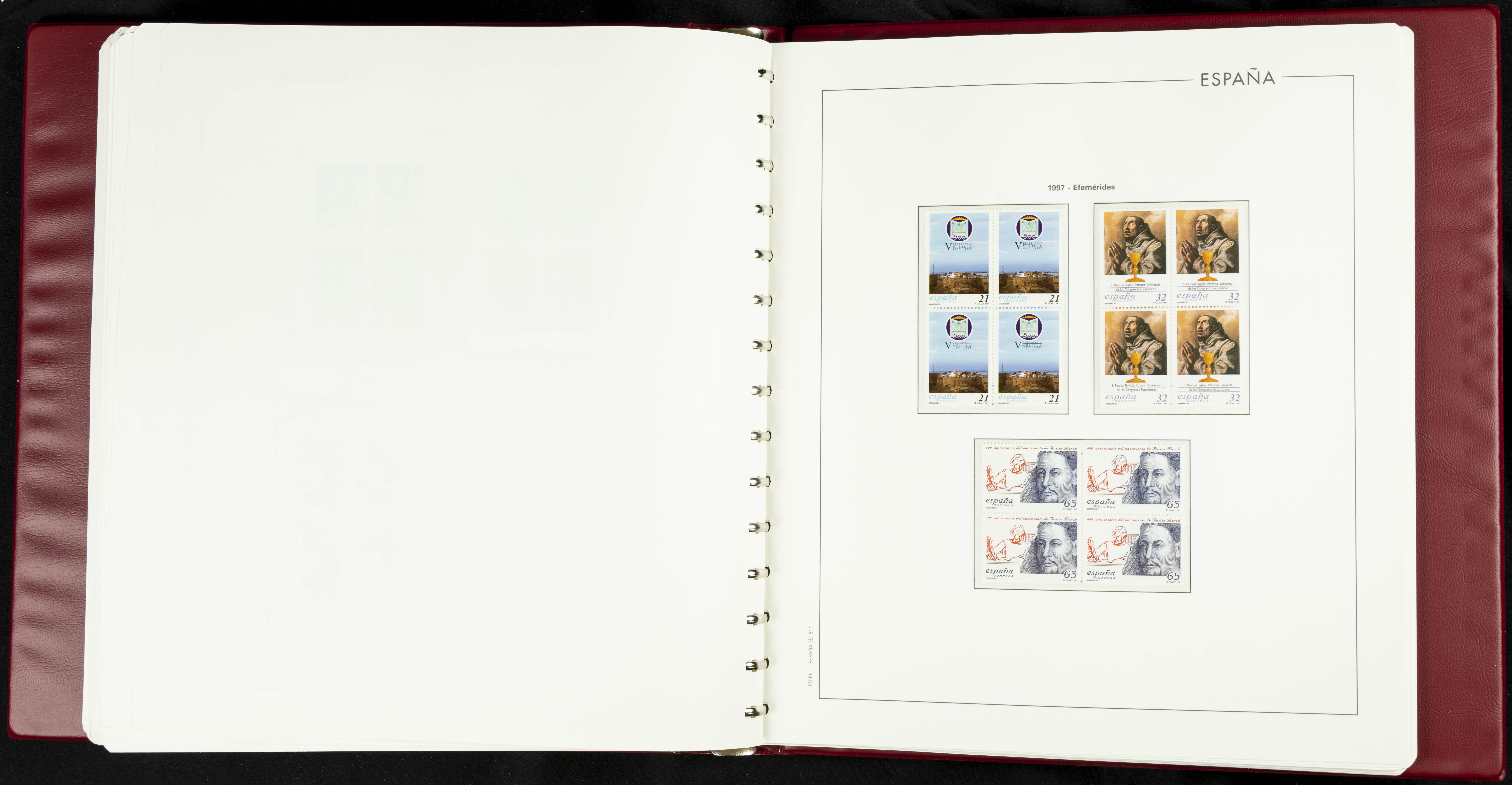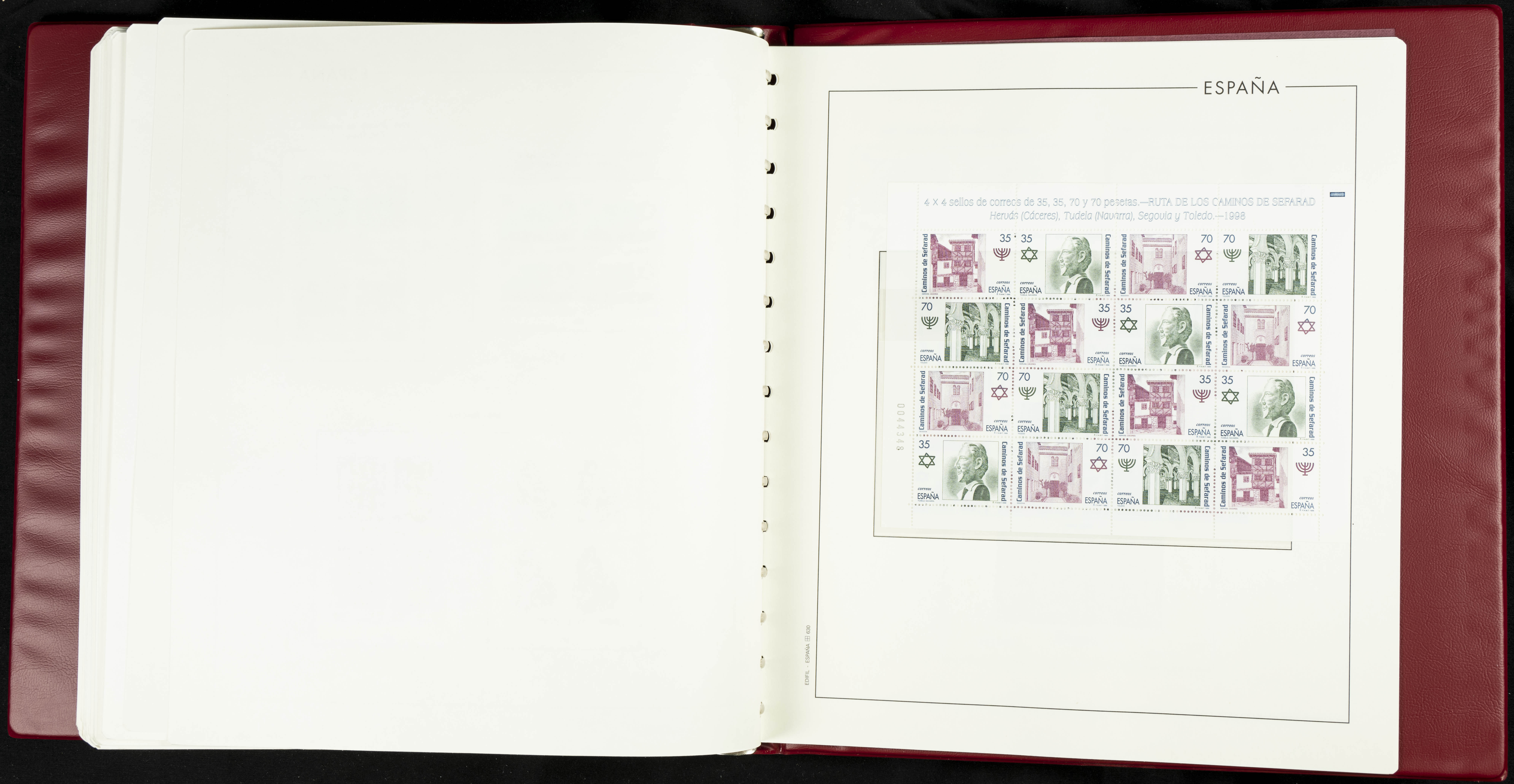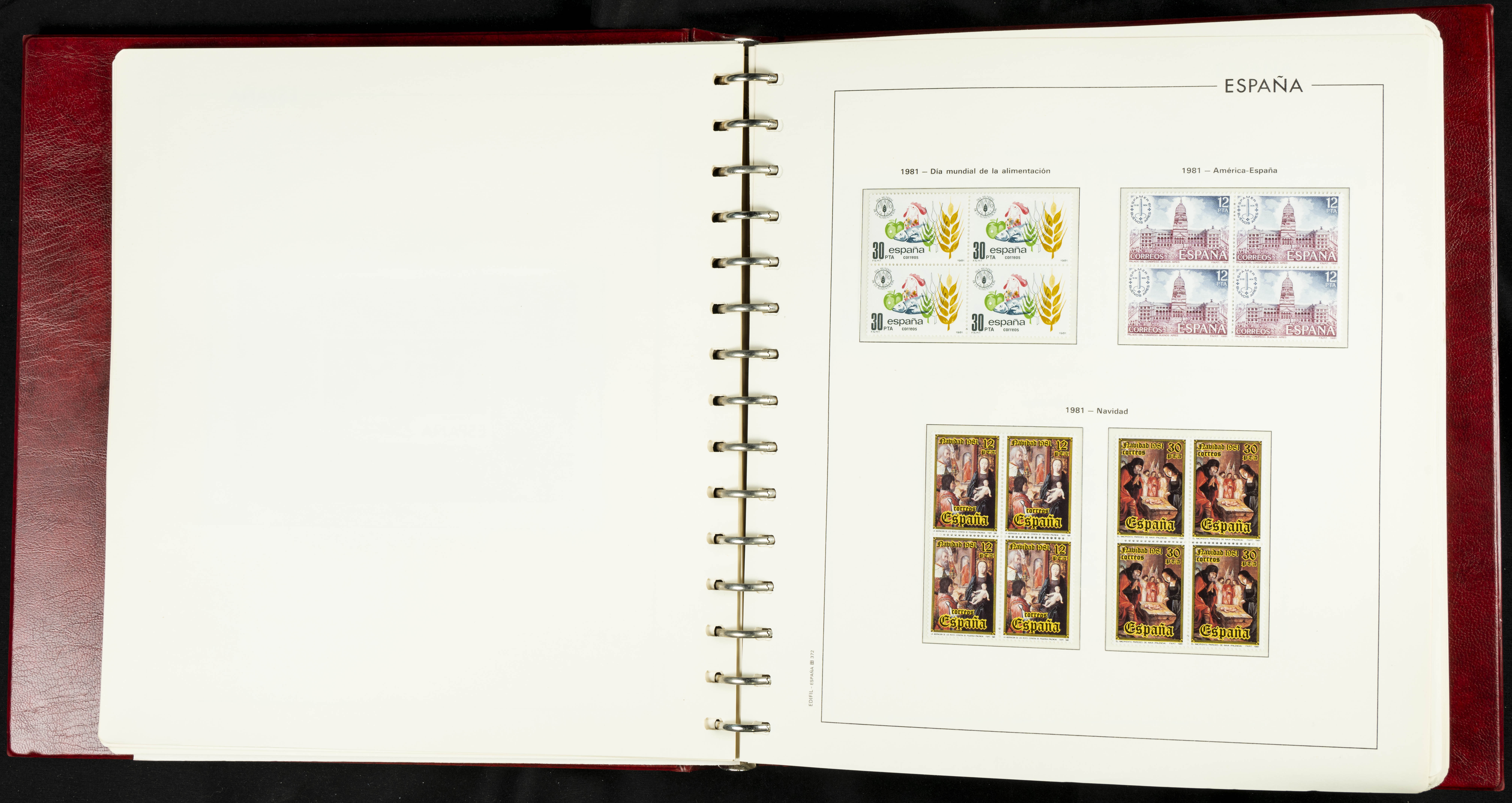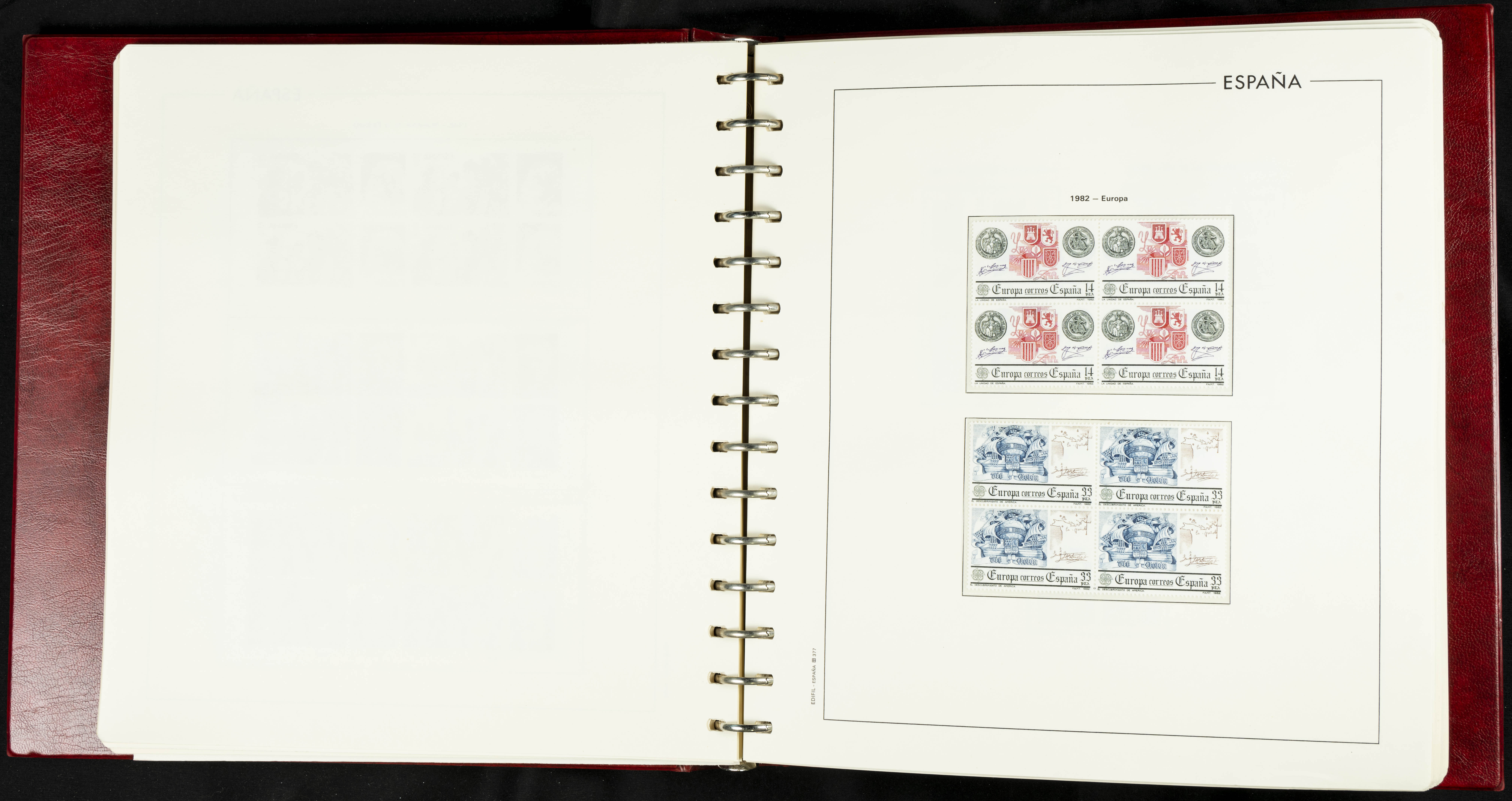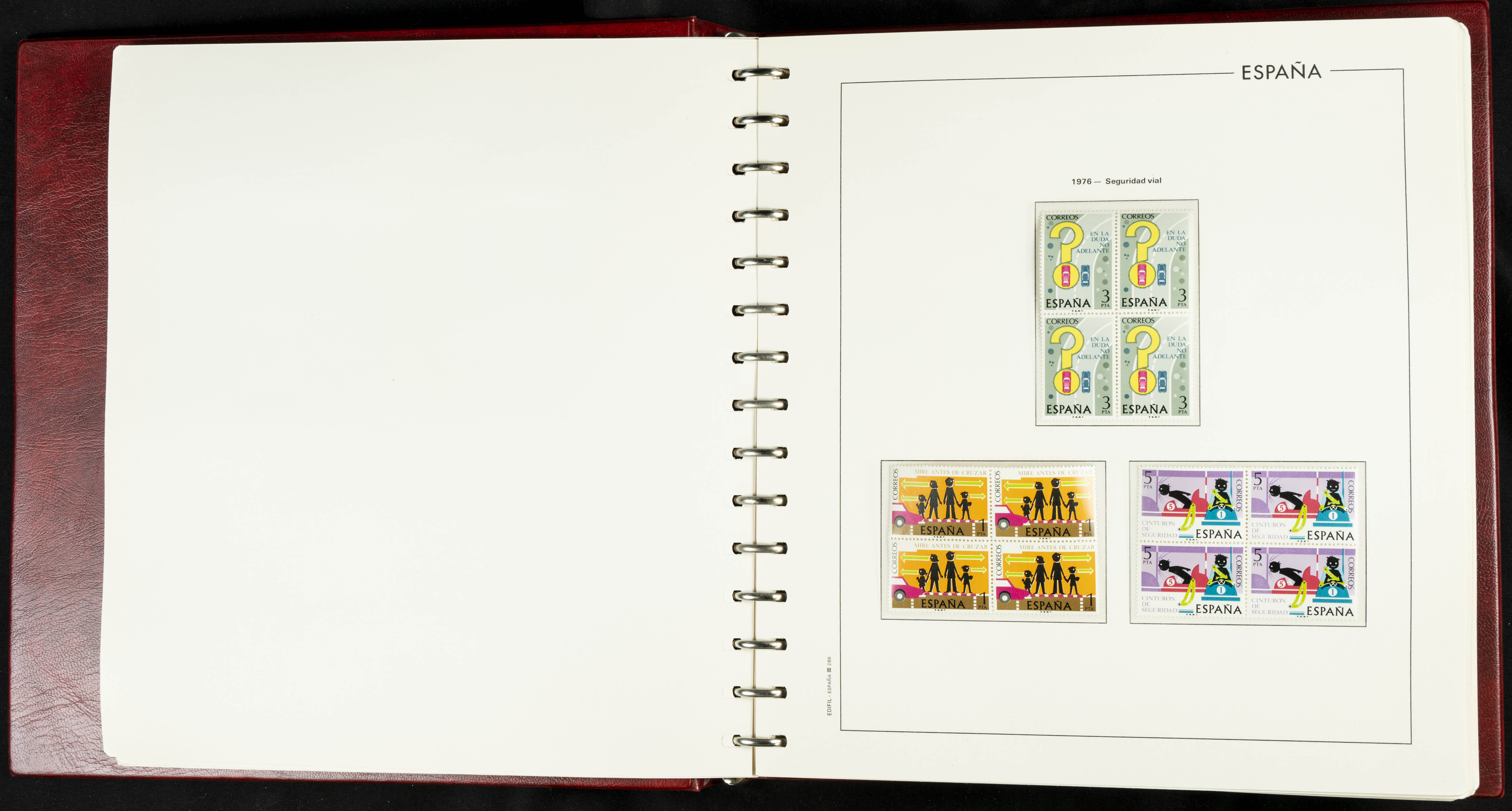 ★★(1976ca). Complete collection between 1976 and 1999, including the 2000 portion denominated exclusively in pesetas, in blocks of four (with a souvenir sheet), in mint condition (mounted in albums). HIGH CATALOGUE VALUE. TO BE EXAMINED.
