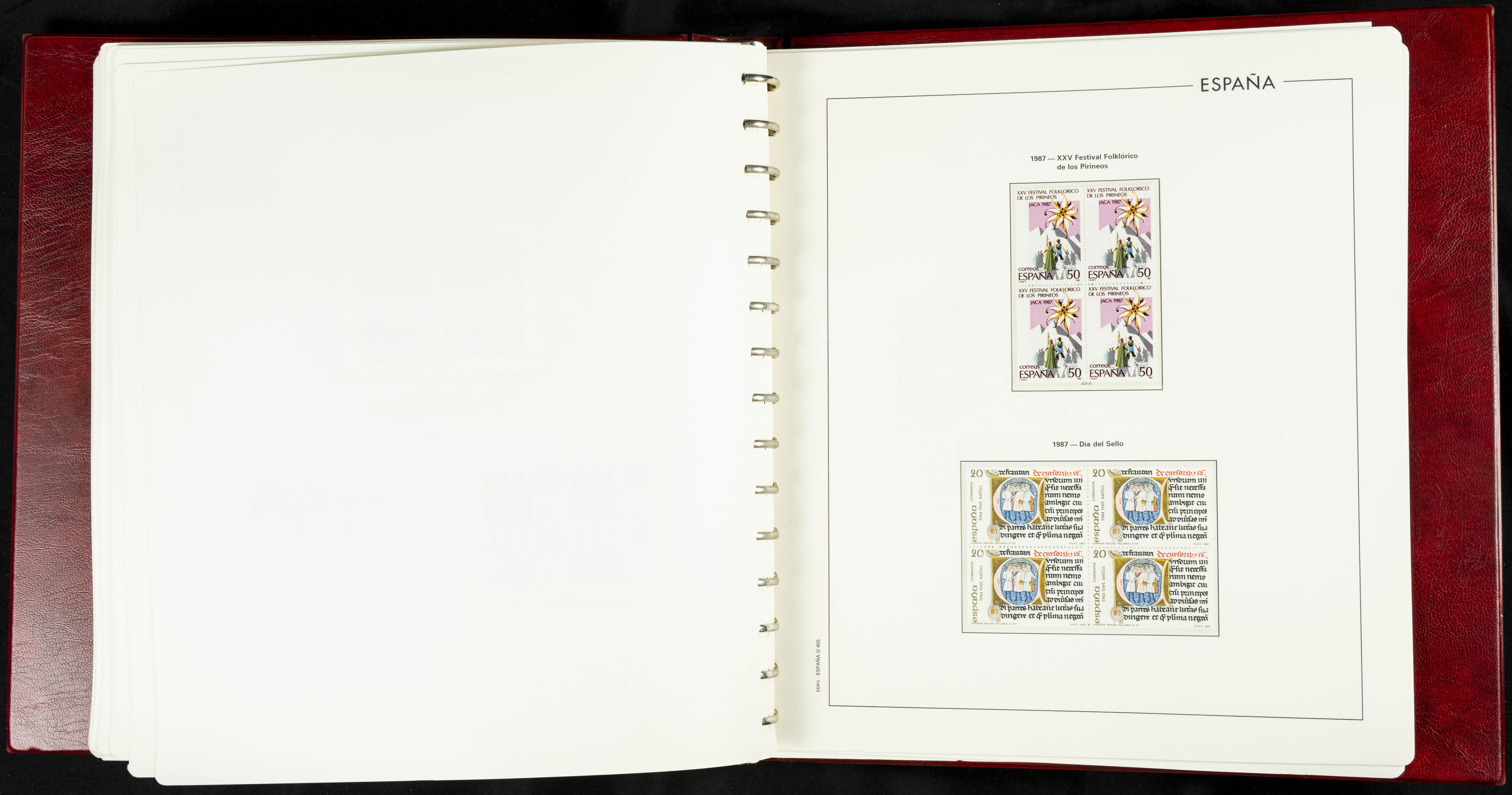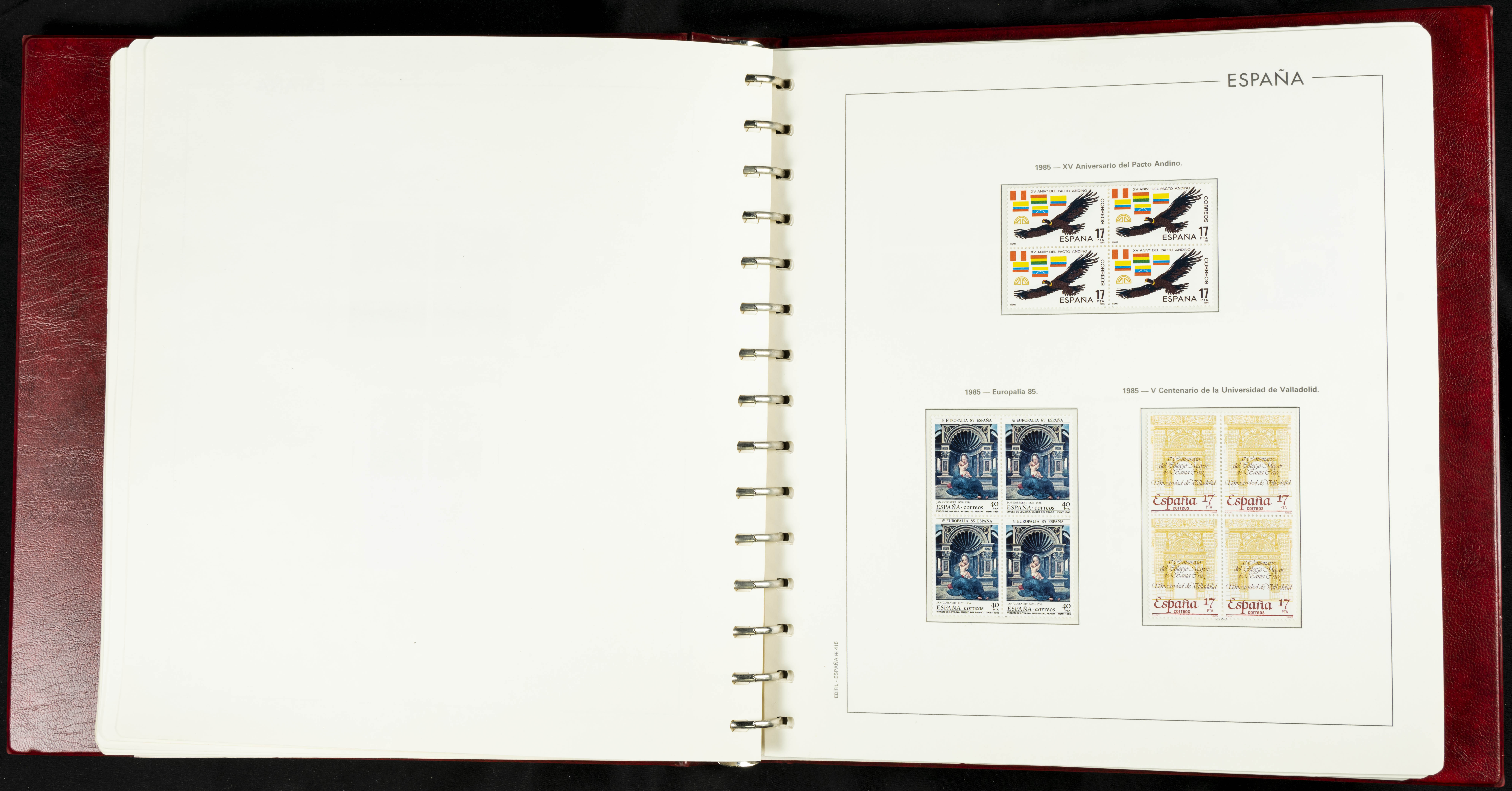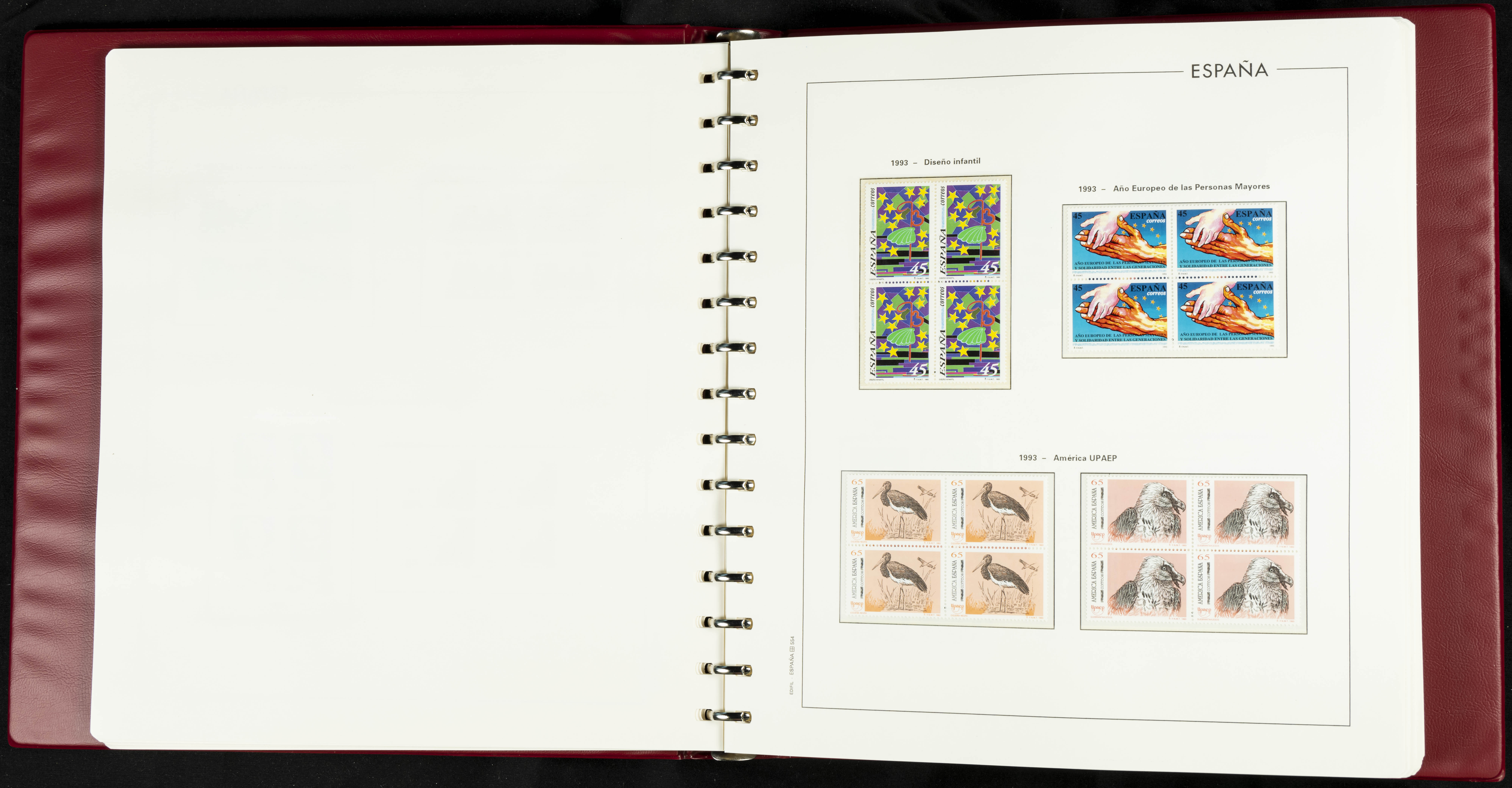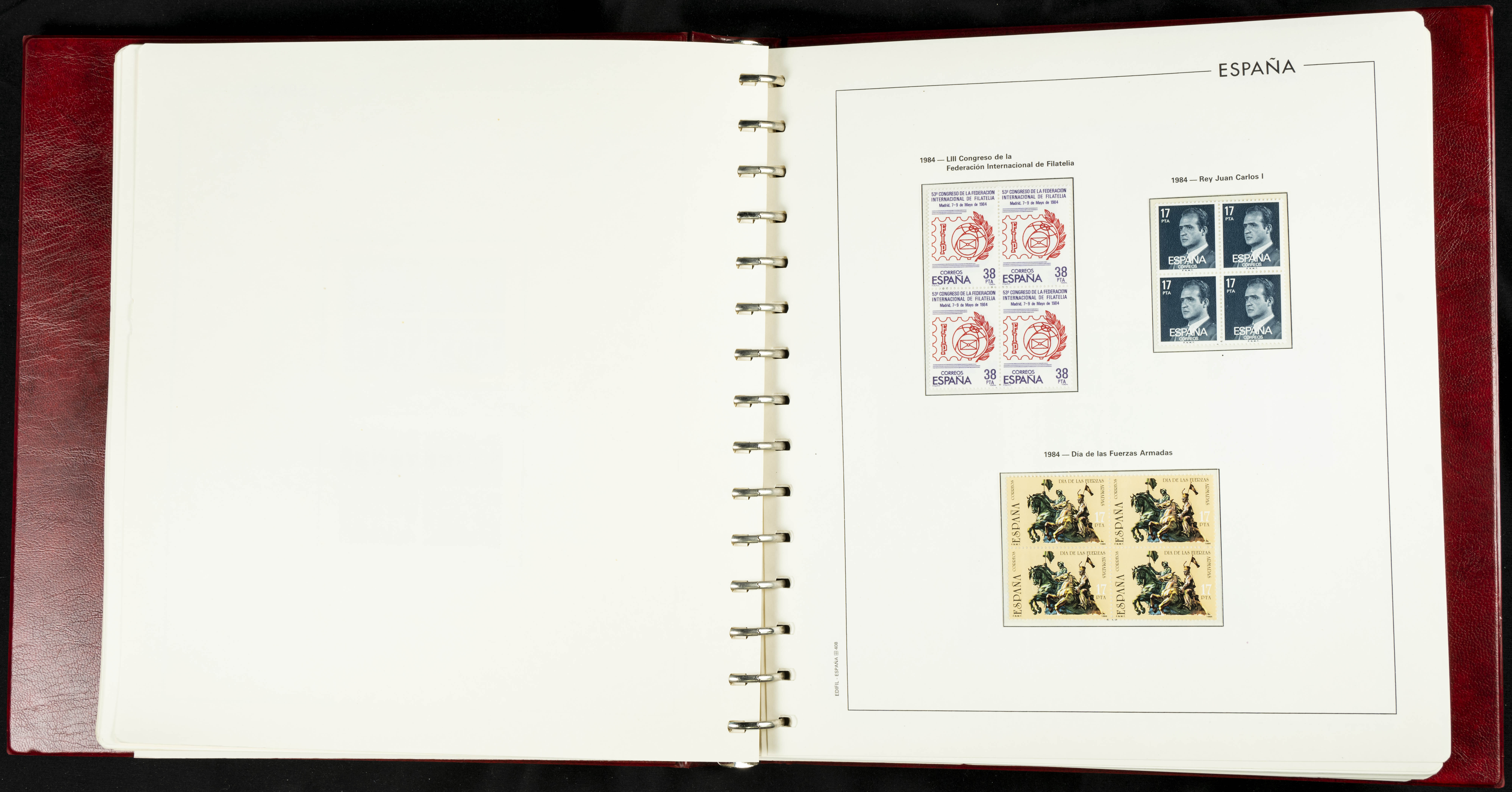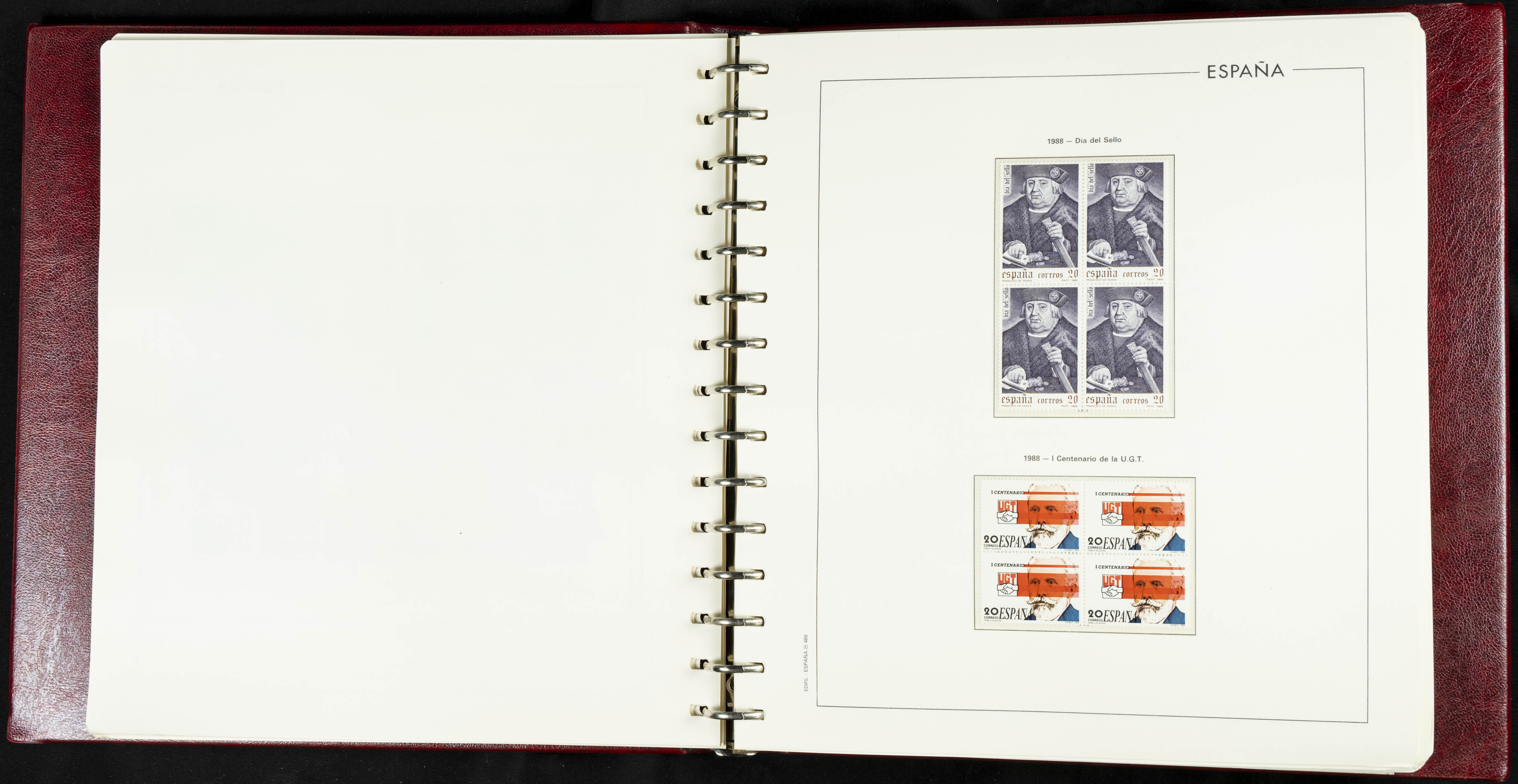 ★★(1976ca). Complete collection between 1976 and 1999, including the 2000 portion denominated exclusively in pesetas, in blocks of four (with a souvenir sheet), in mint condition (mounted in albums). HIGH CATALOGUE VALUE. TO BE EXAMINED.