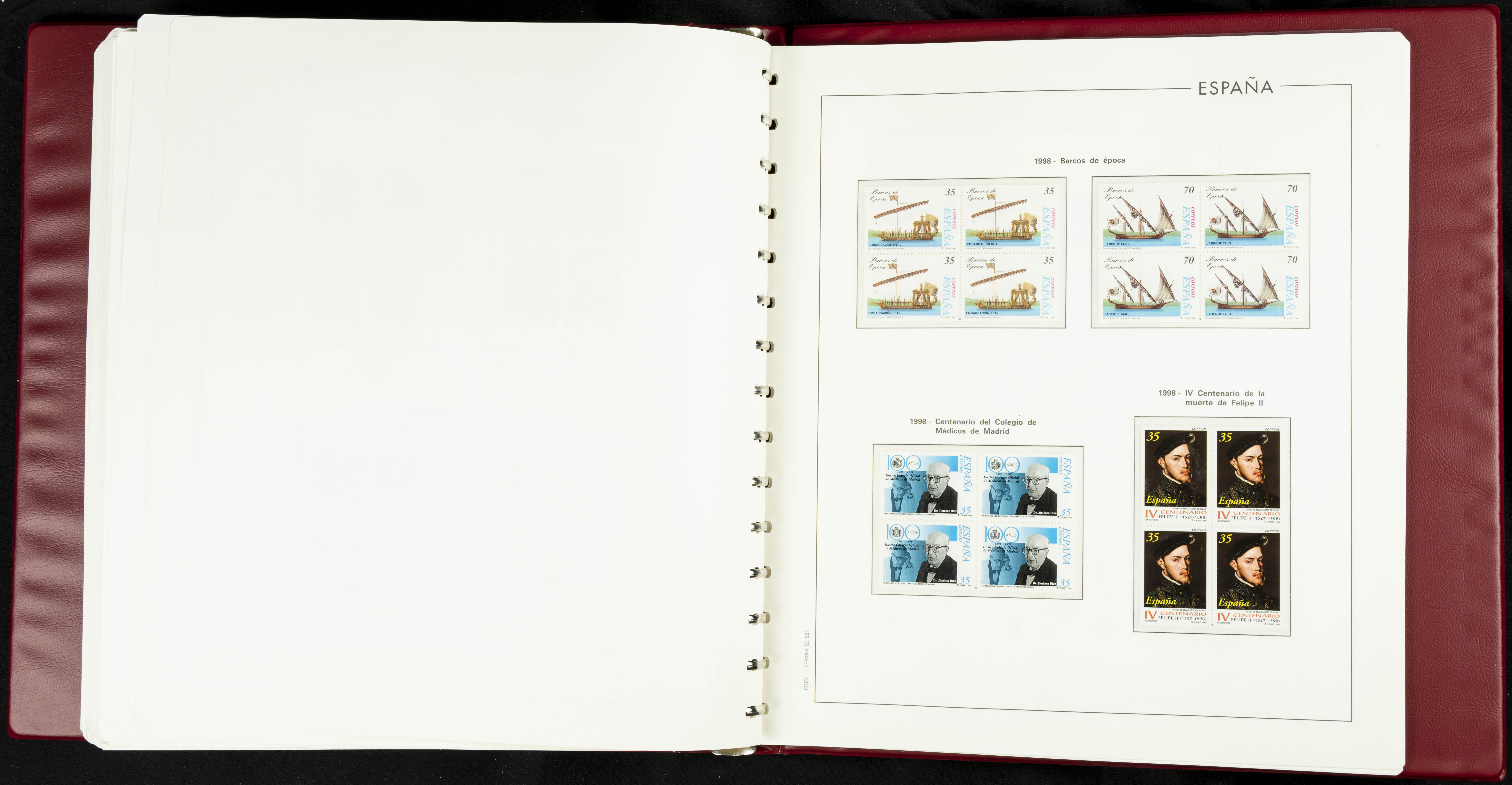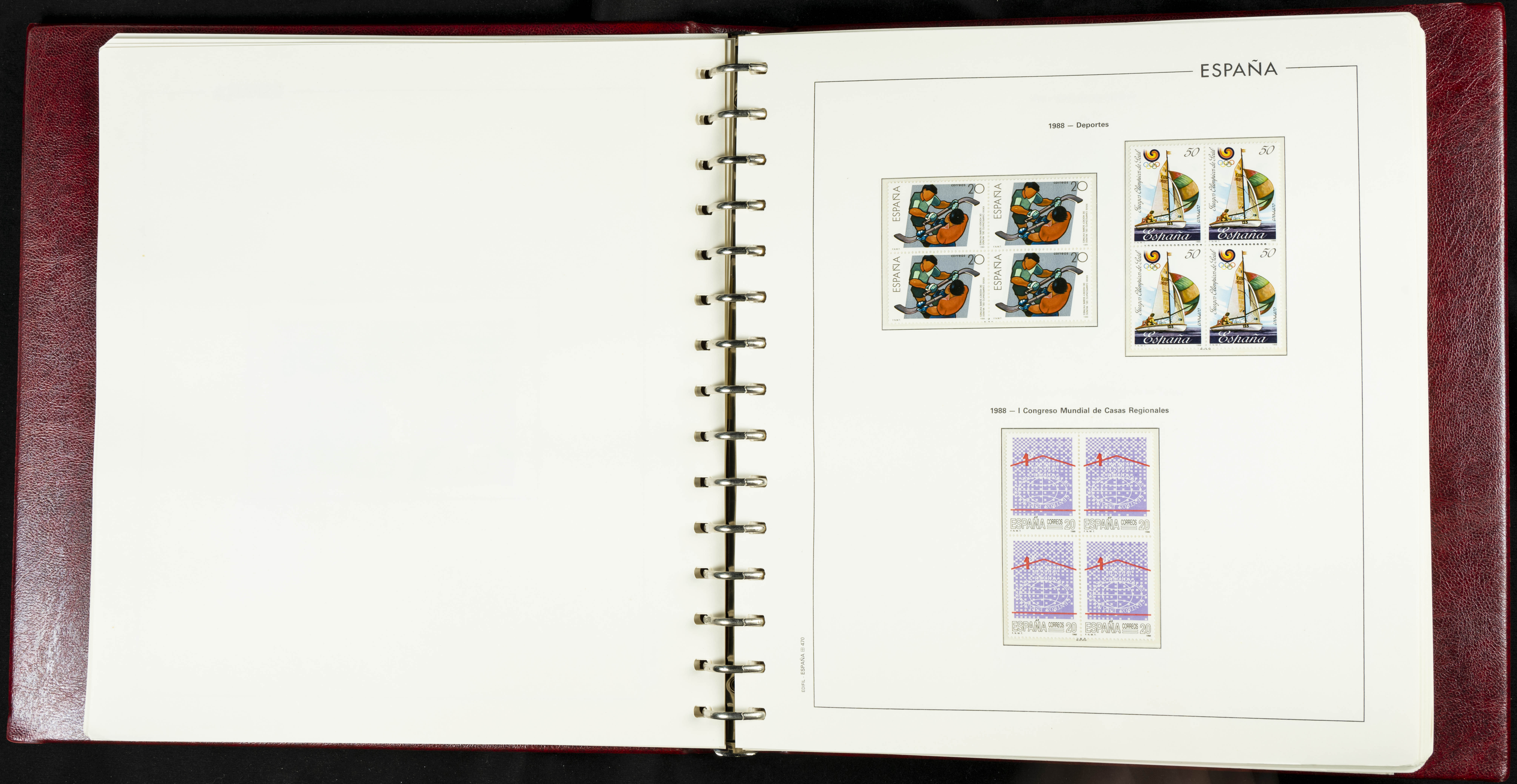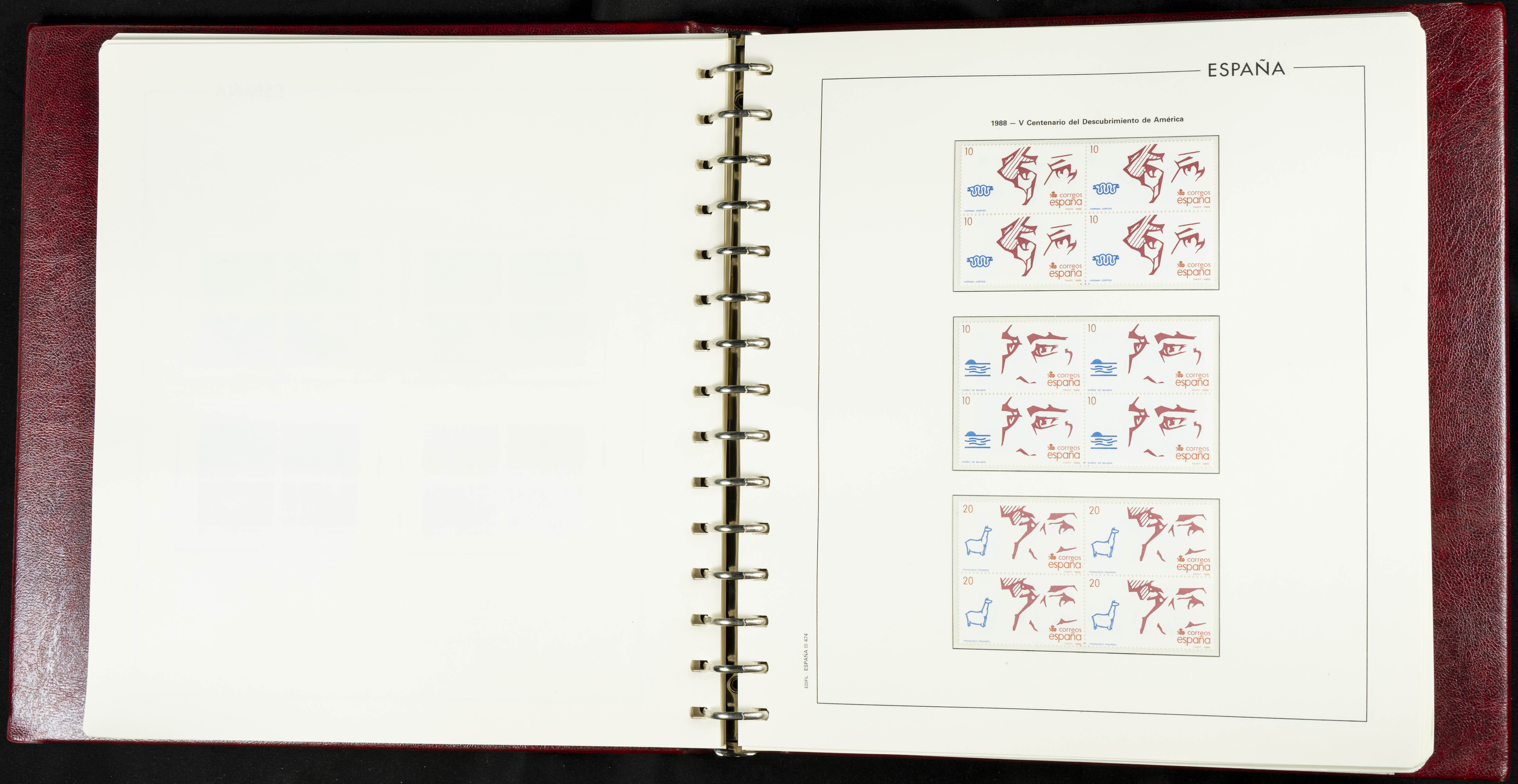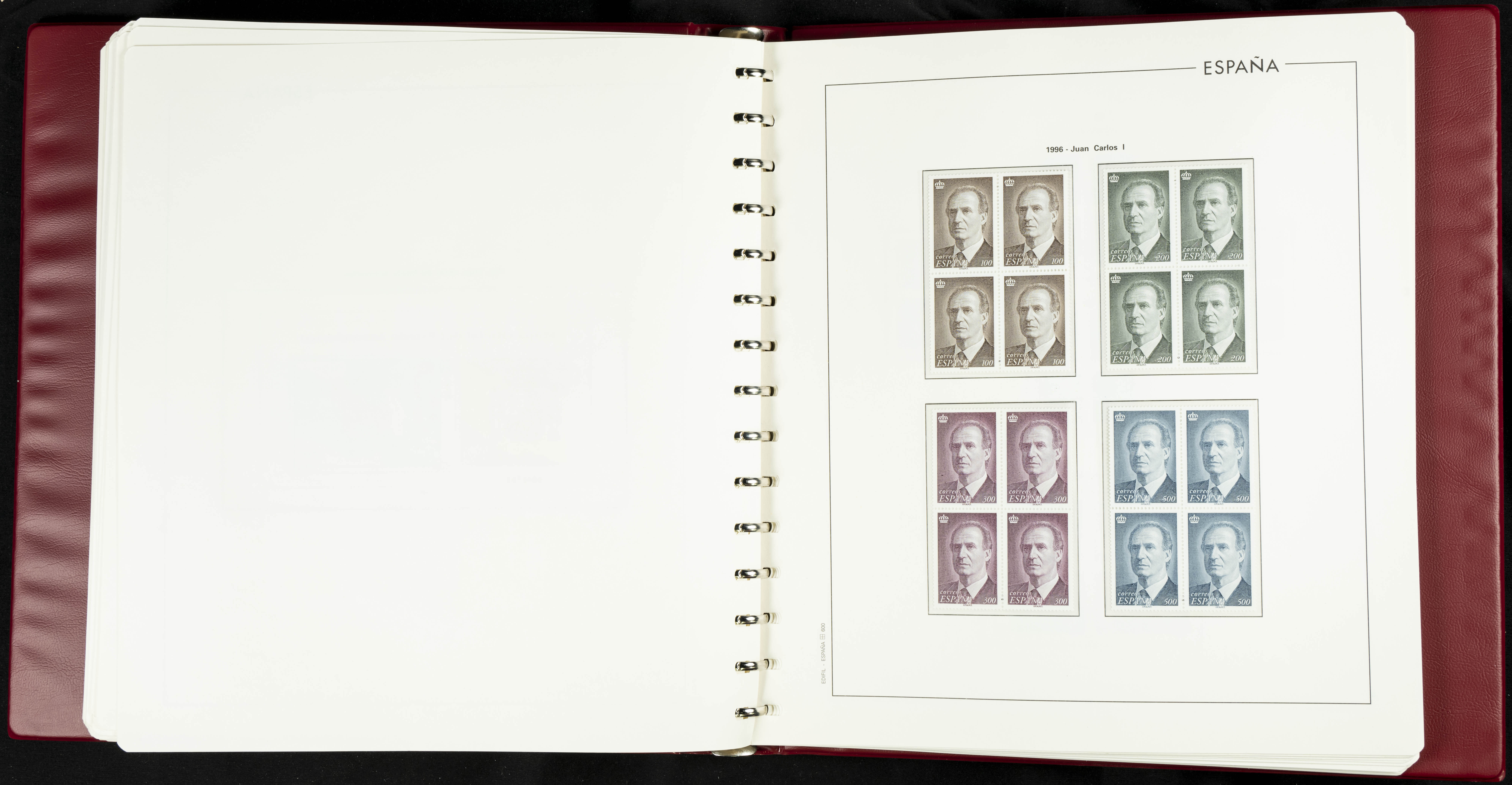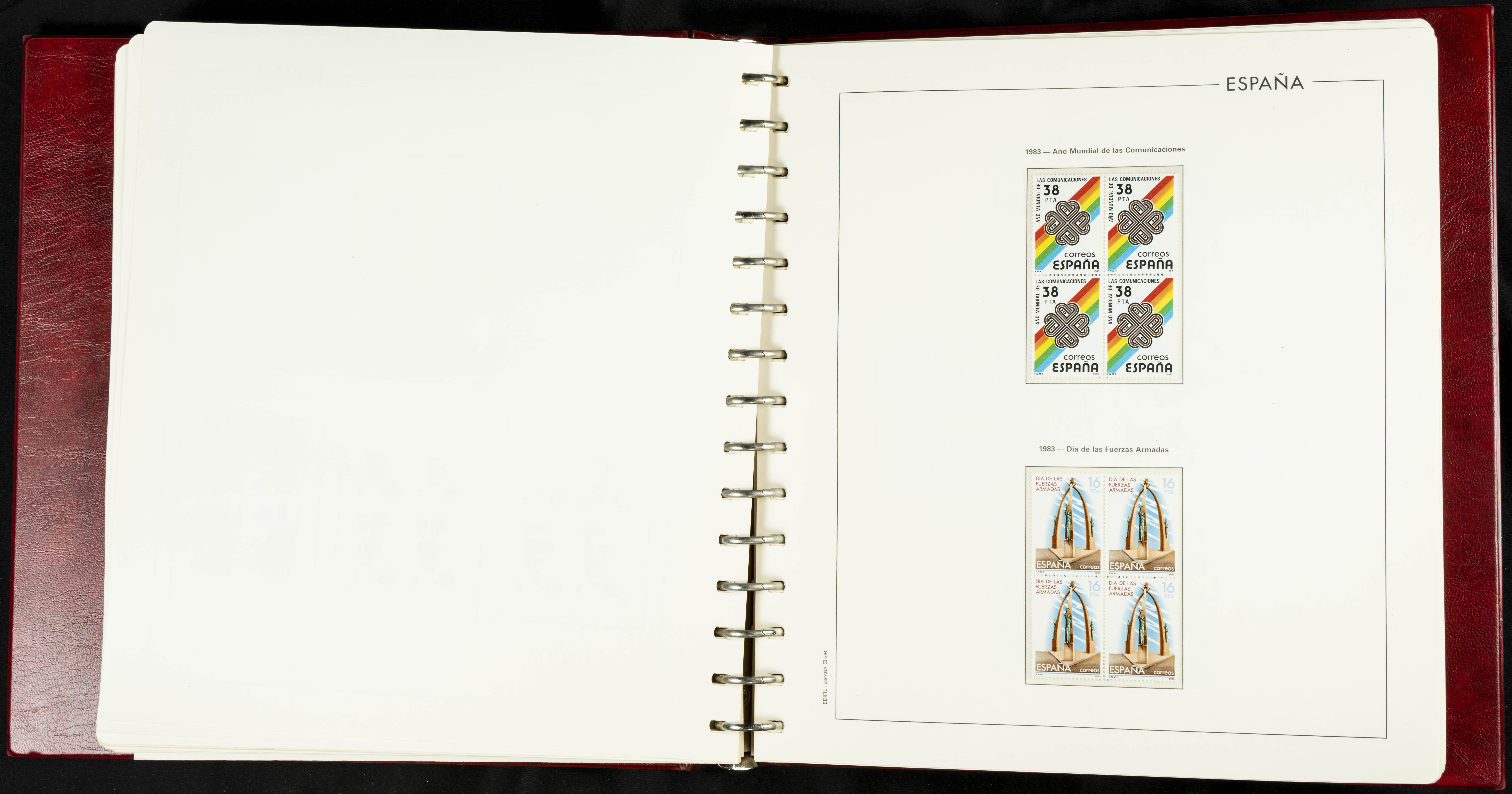 ★★(1976ca). Complete collection between 1976 and 1999, including the 2000 portion denominated exclusively in pesetas, in blocks of four (with a souvenir sheet), in mint condition (mounted in albums). HIGH CATALOGUE VALUE. TO BE EXAMINED.
