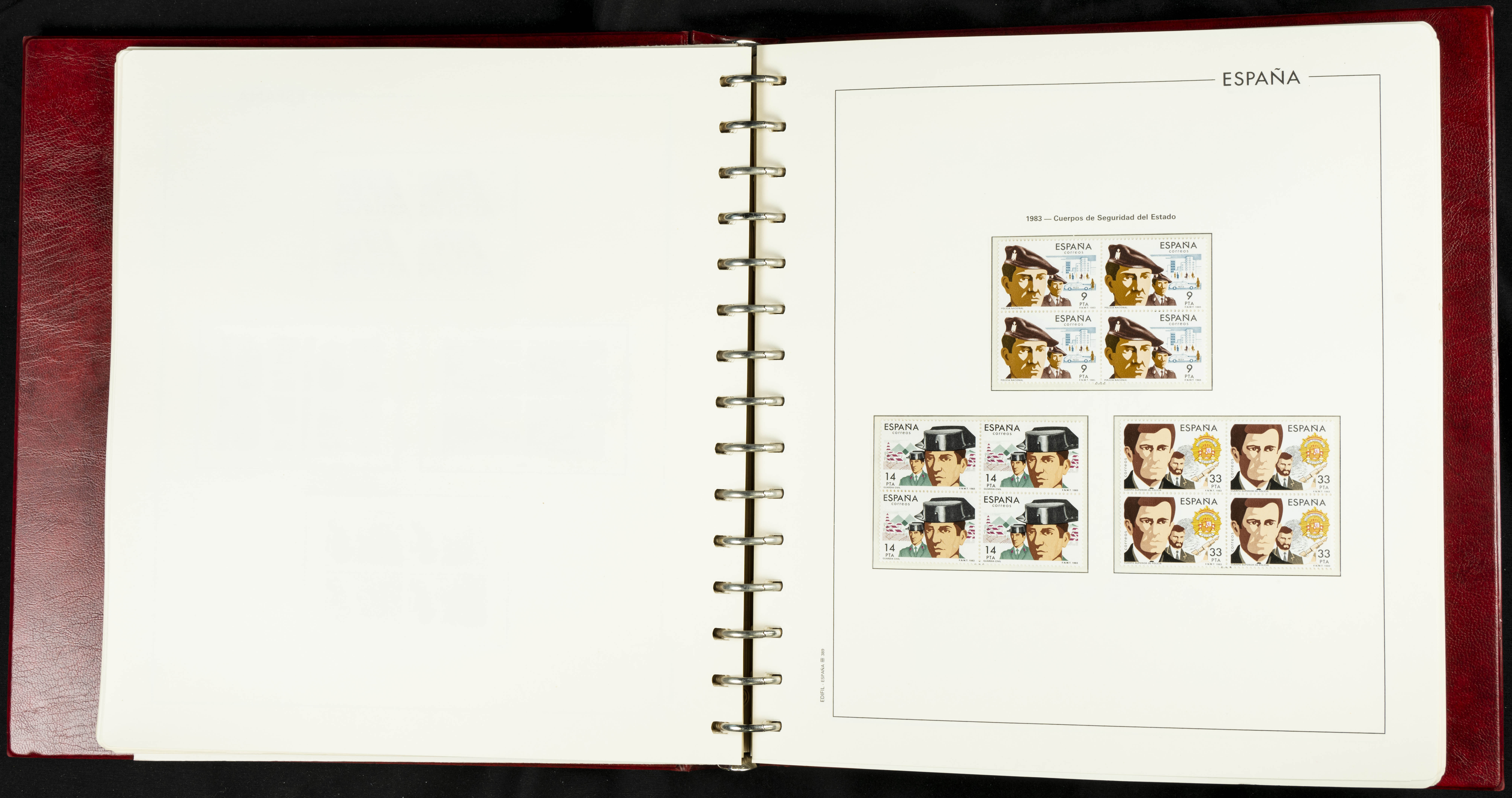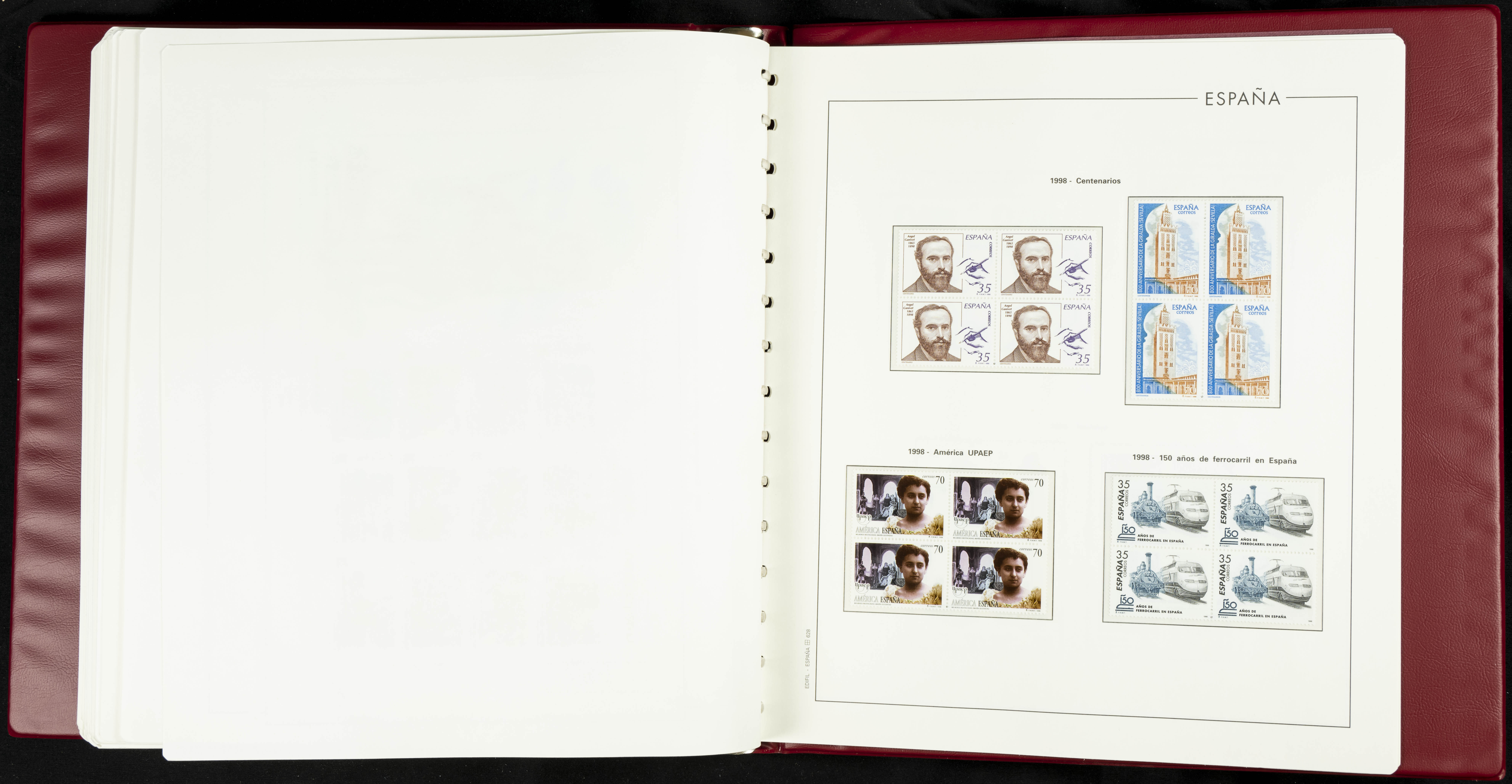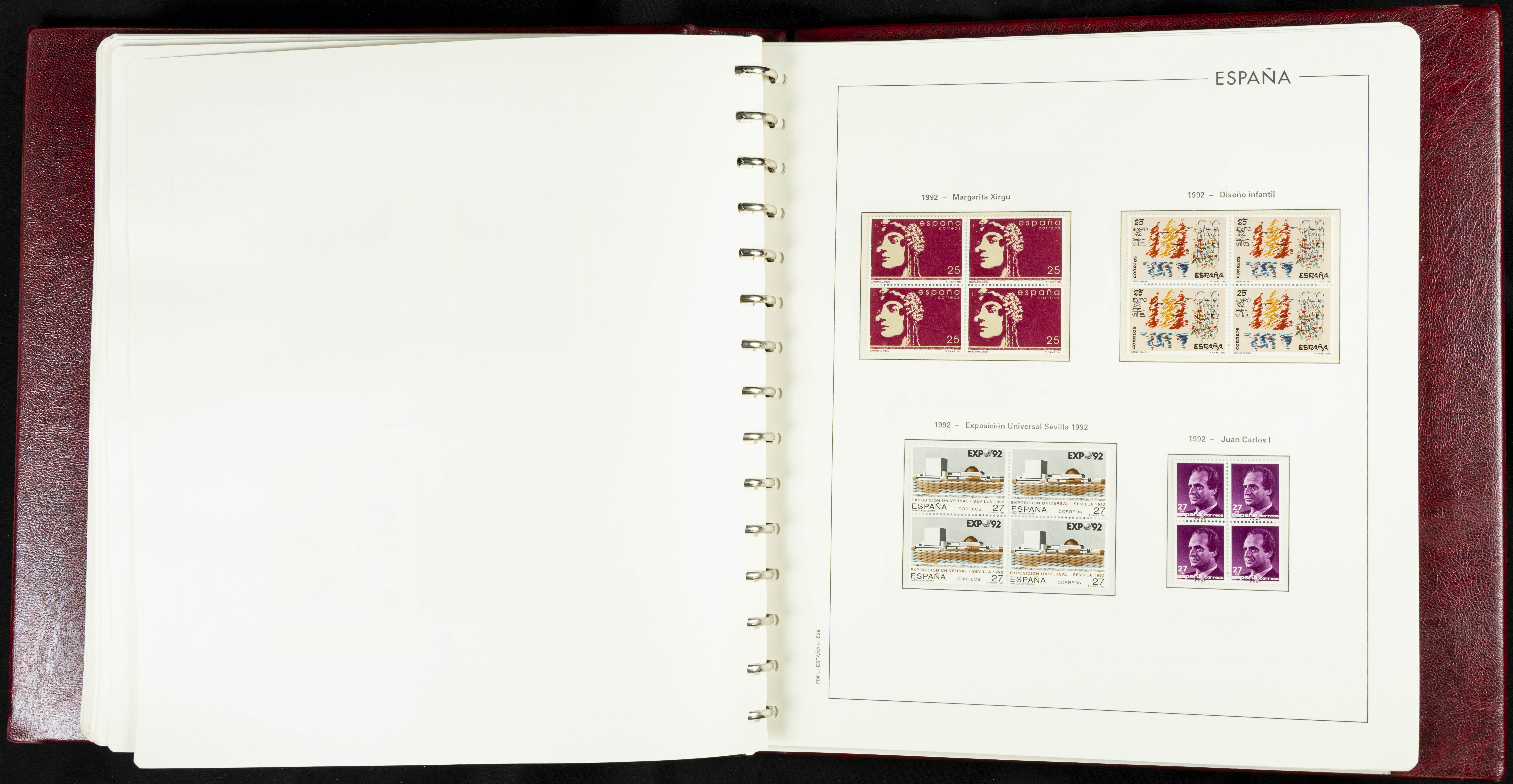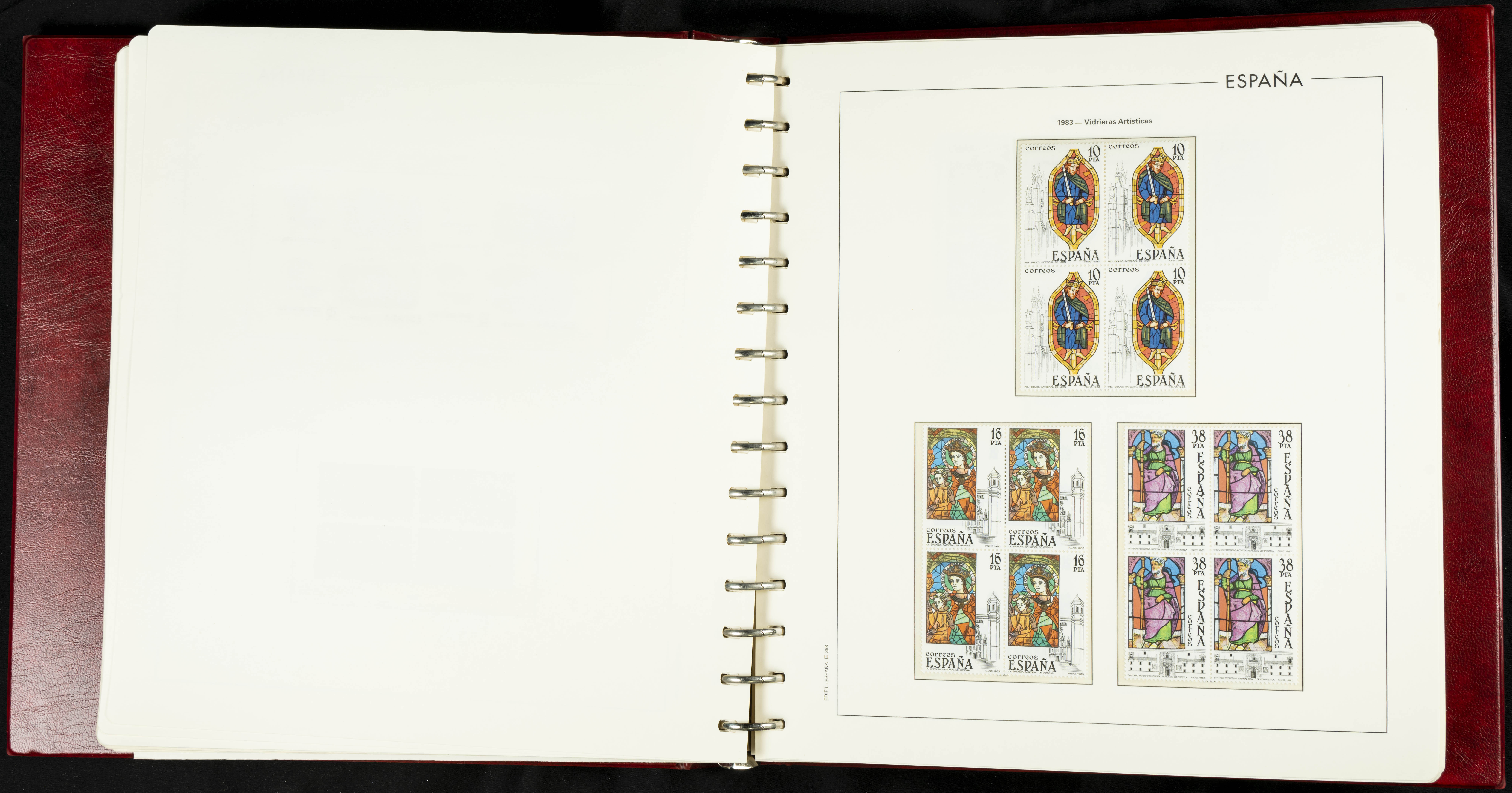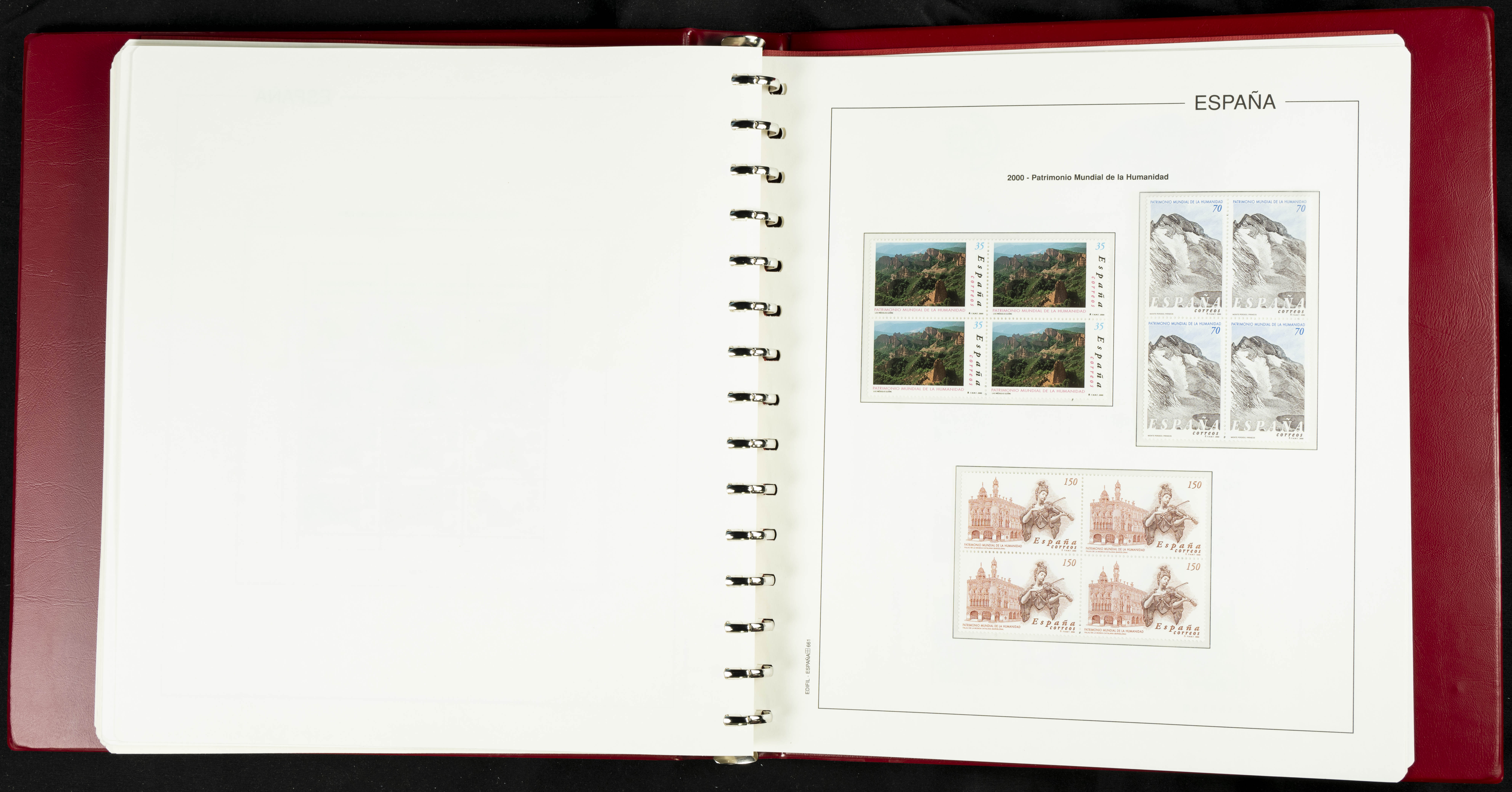 ★★(1976ca). Complete collection between 1976 and 1999, including the 2000 portion denominated exclusively in pesetas, in blocks of four (with a souvenir sheet), in mint condition (mounted in albums). HIGH CATALOGUE VALUE. TO BE EXAMINED.