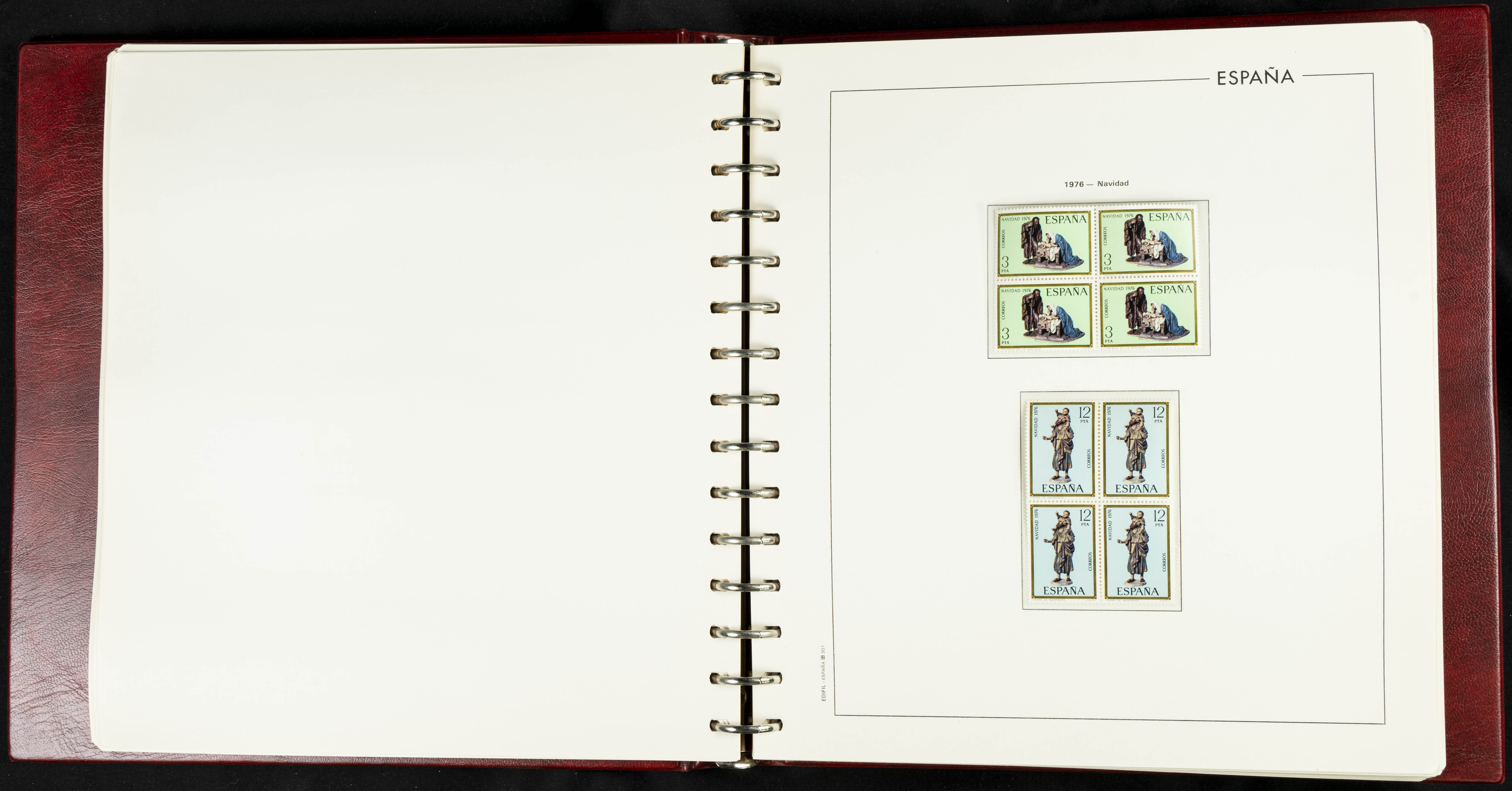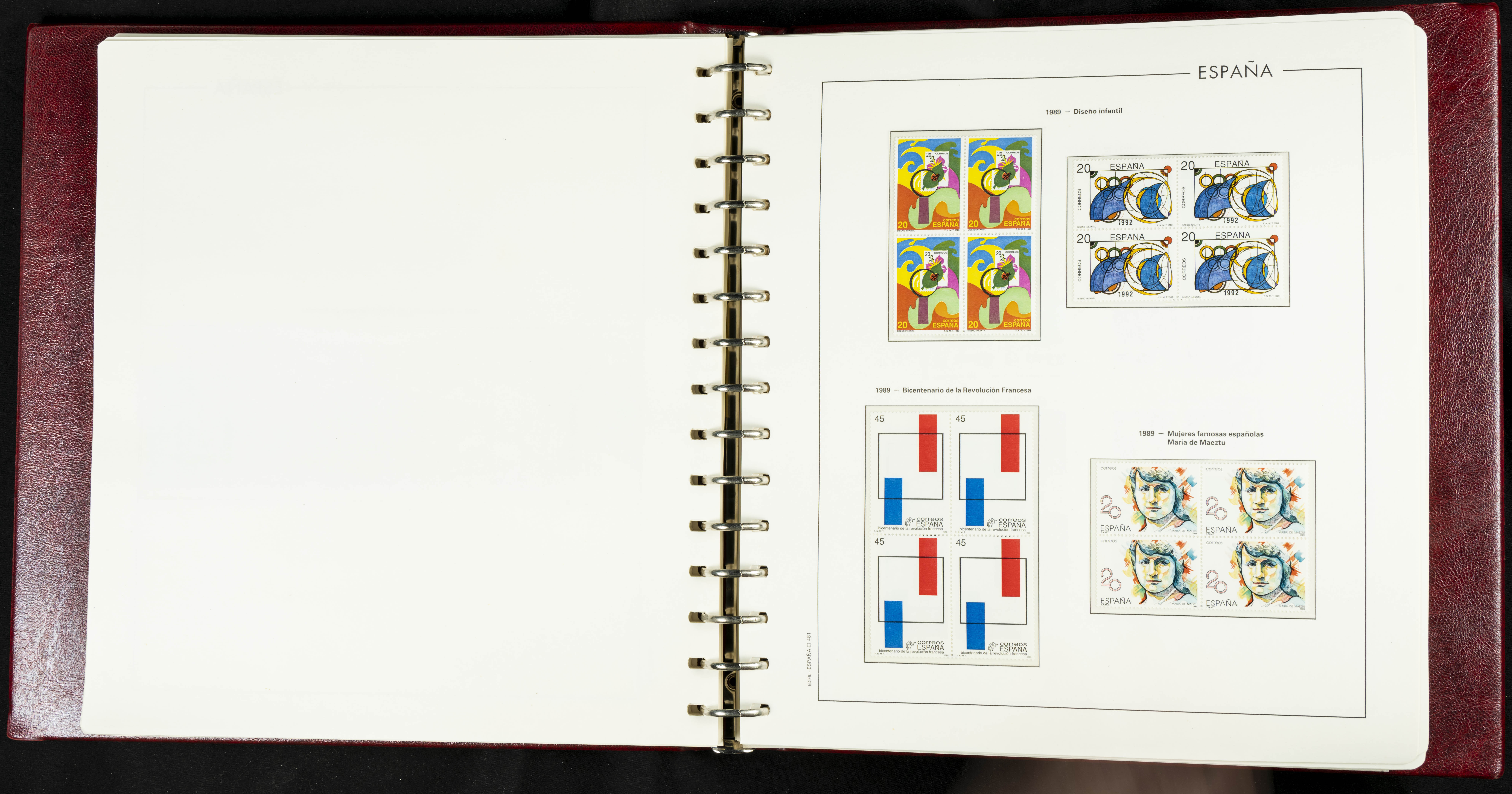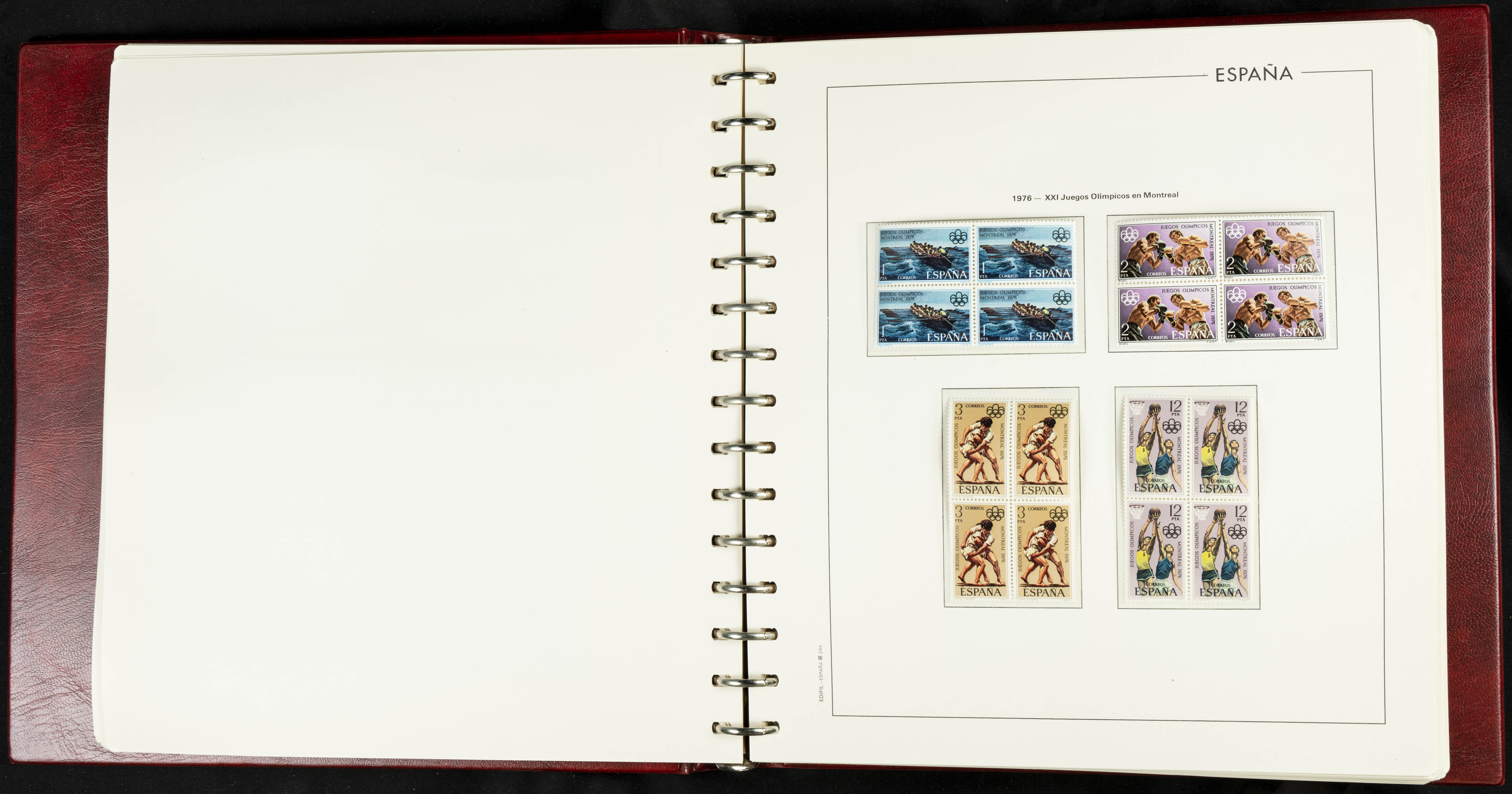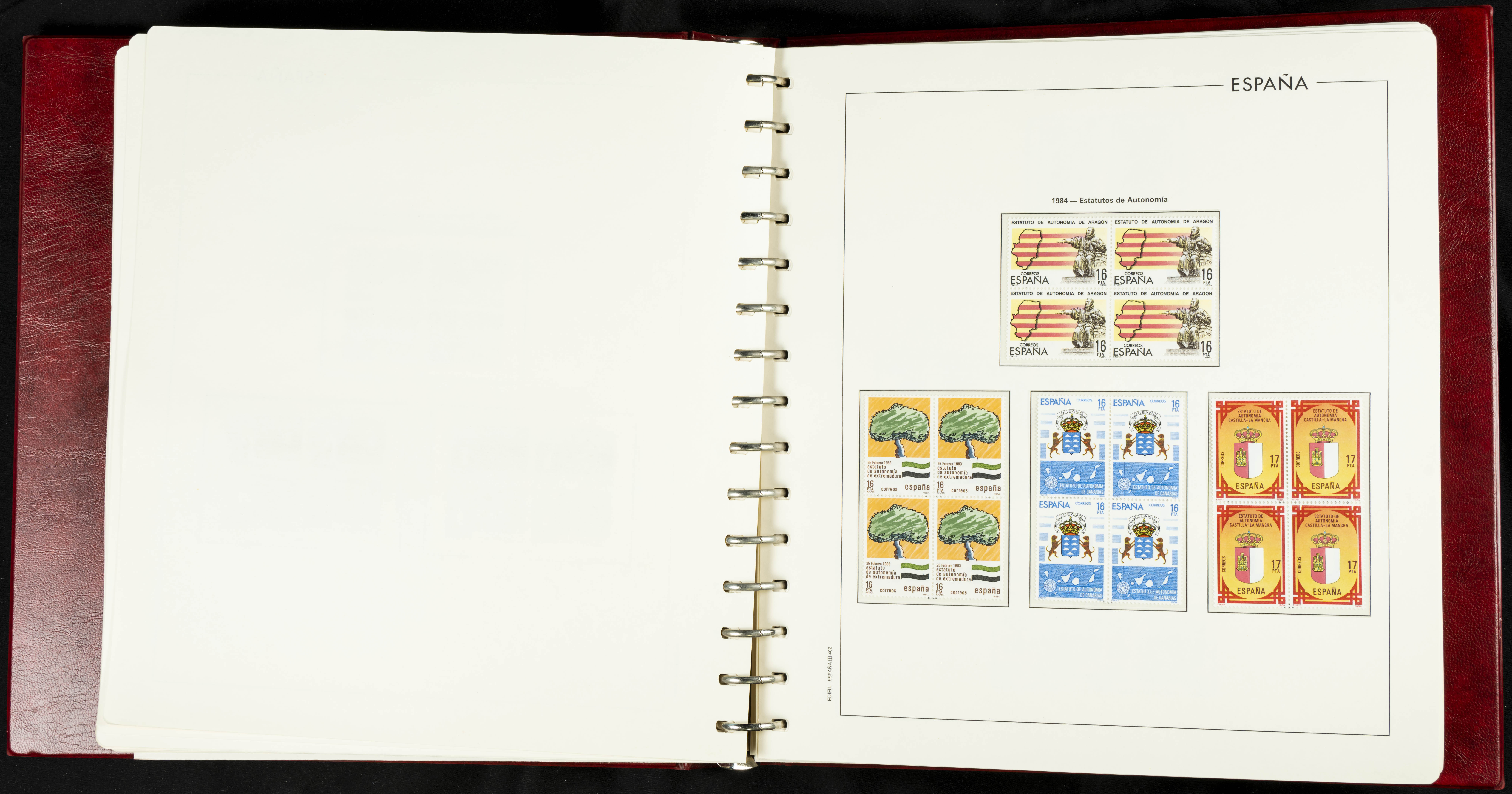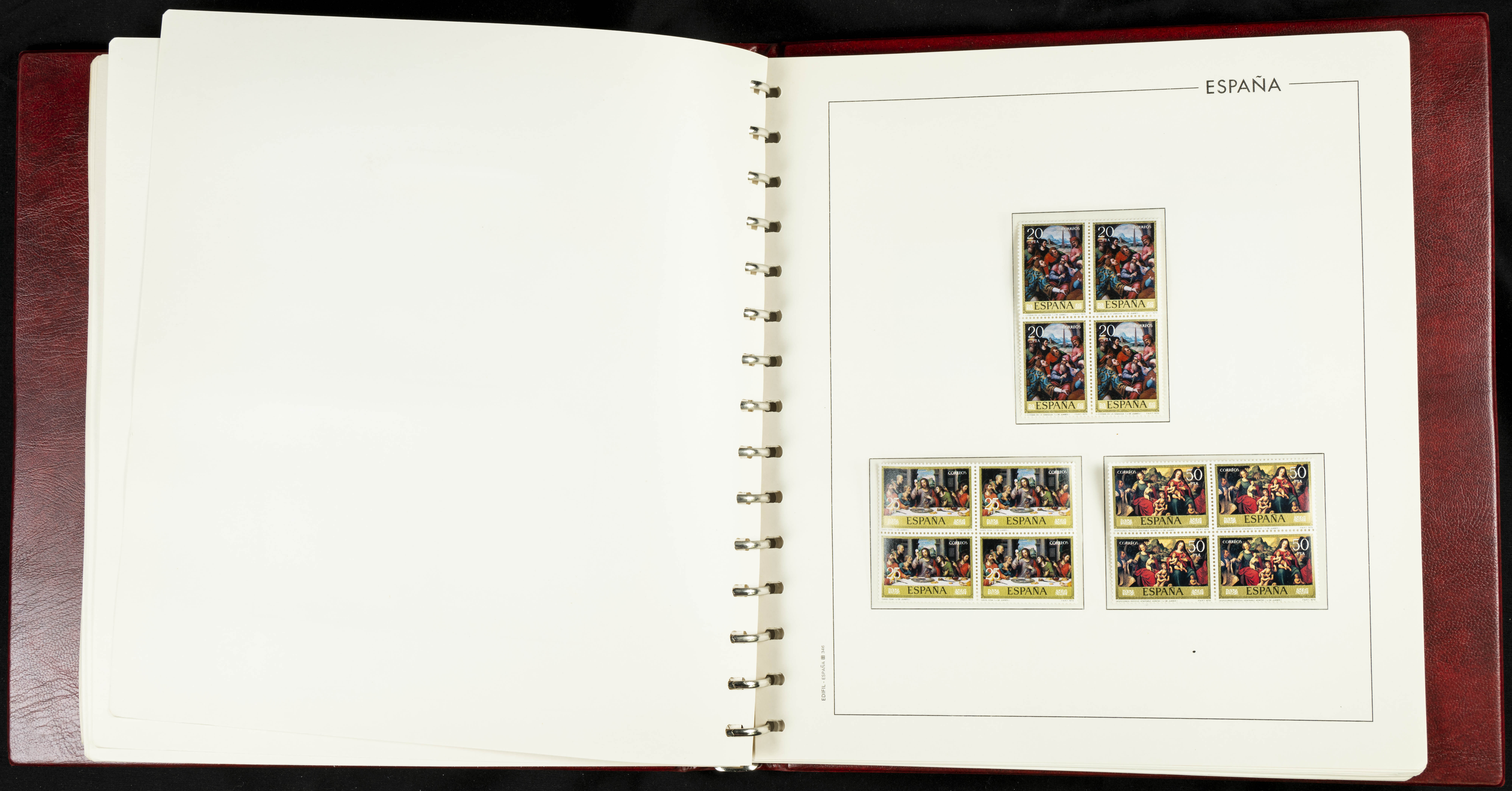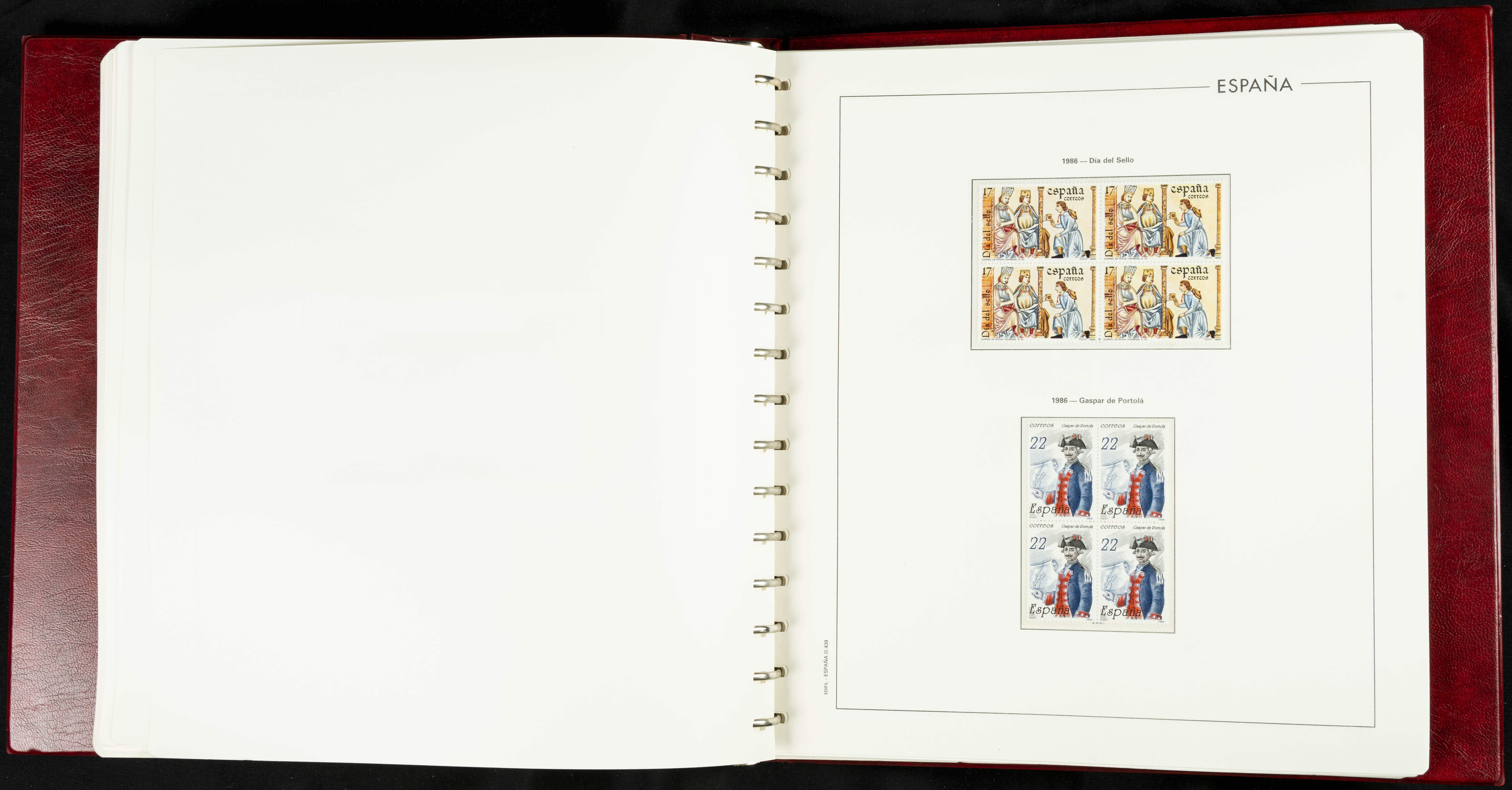 ★★(1976ca). Complete collection between 1976 and 1999, including the 2000 portion denominated exclusively in pesetas, in blocks of four (with a souvenir sheet), in mint condition (mounted in albums). HIGH CATALOGUE VALUE. TO BE EXAMINED.