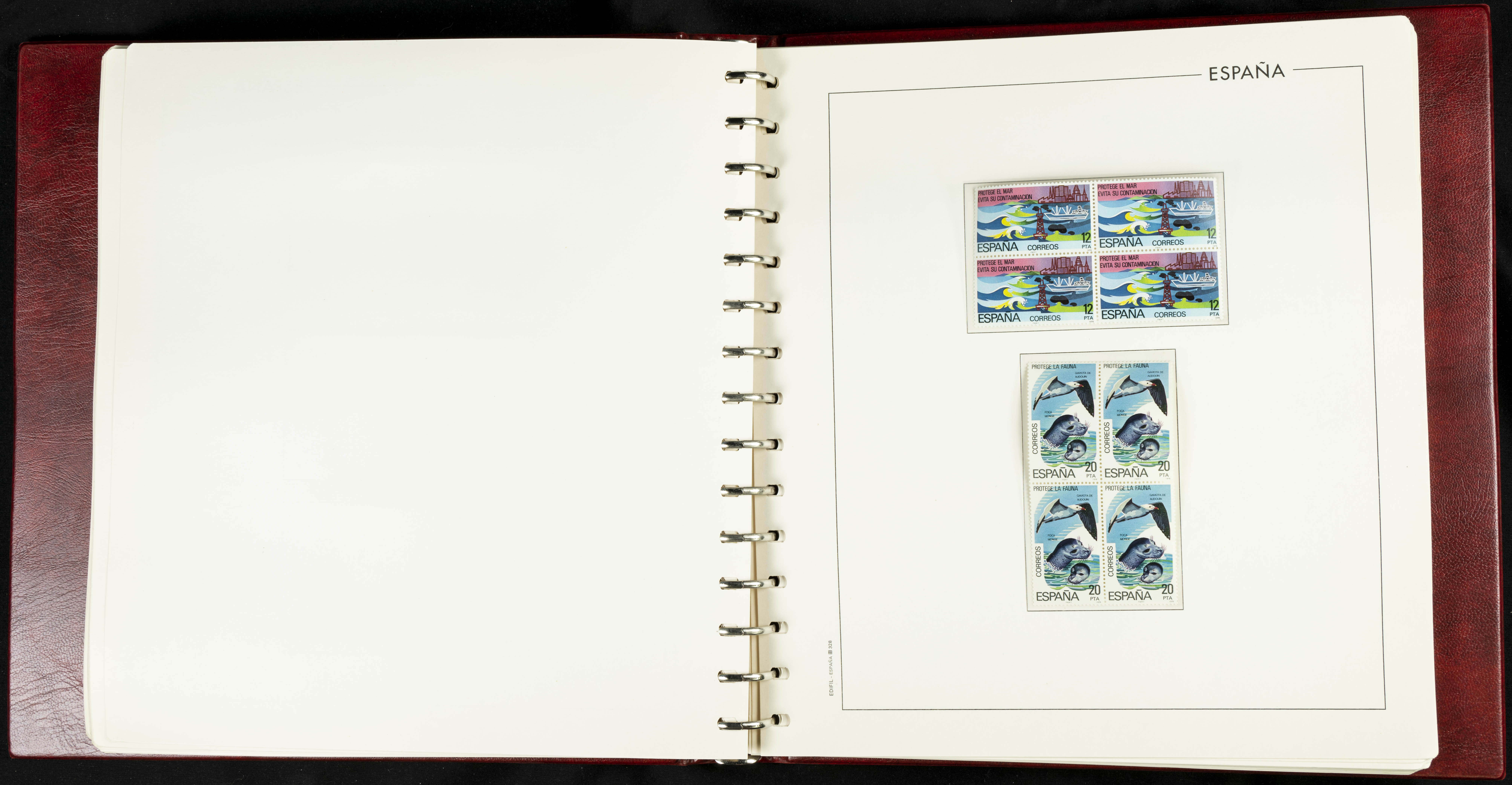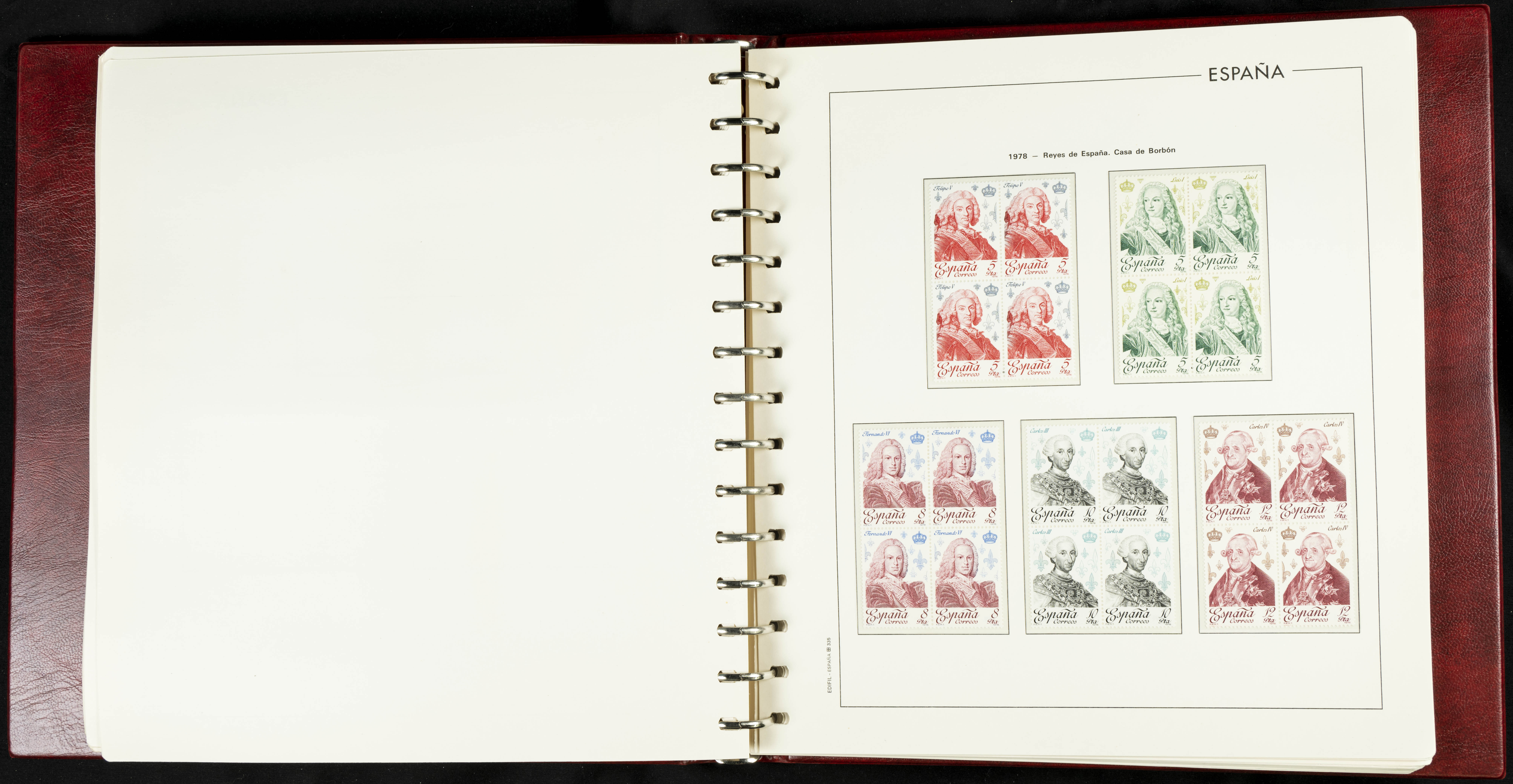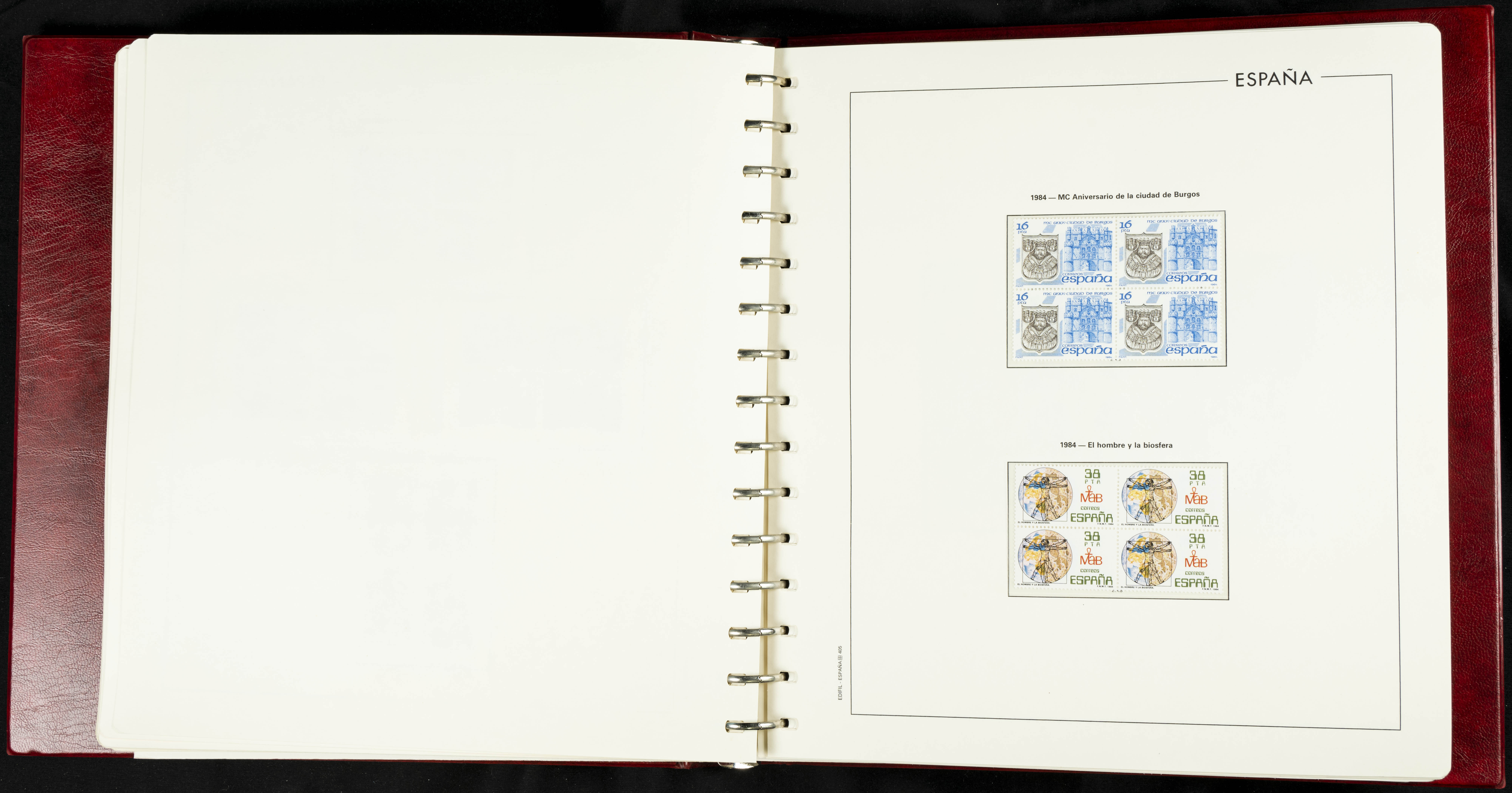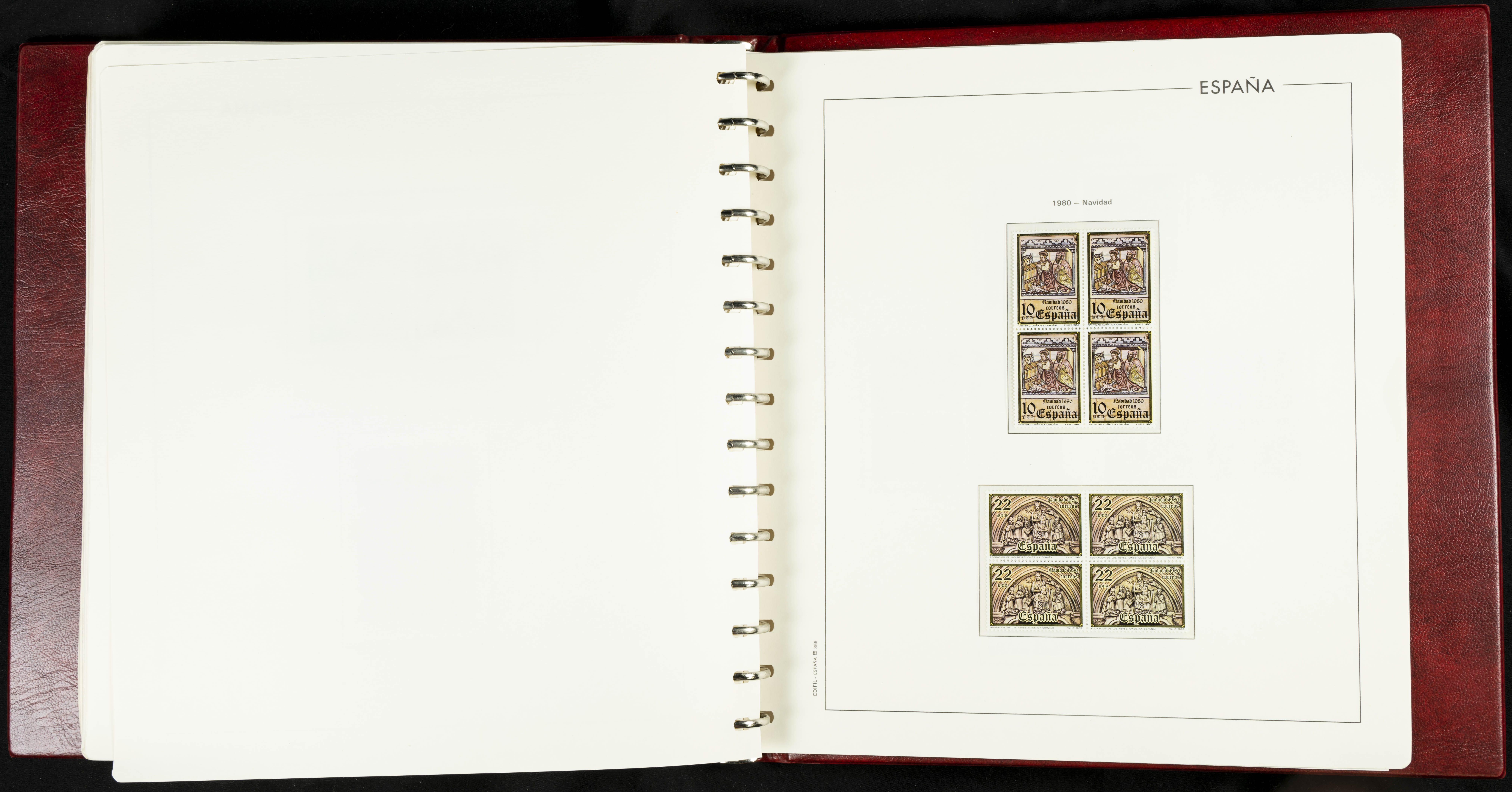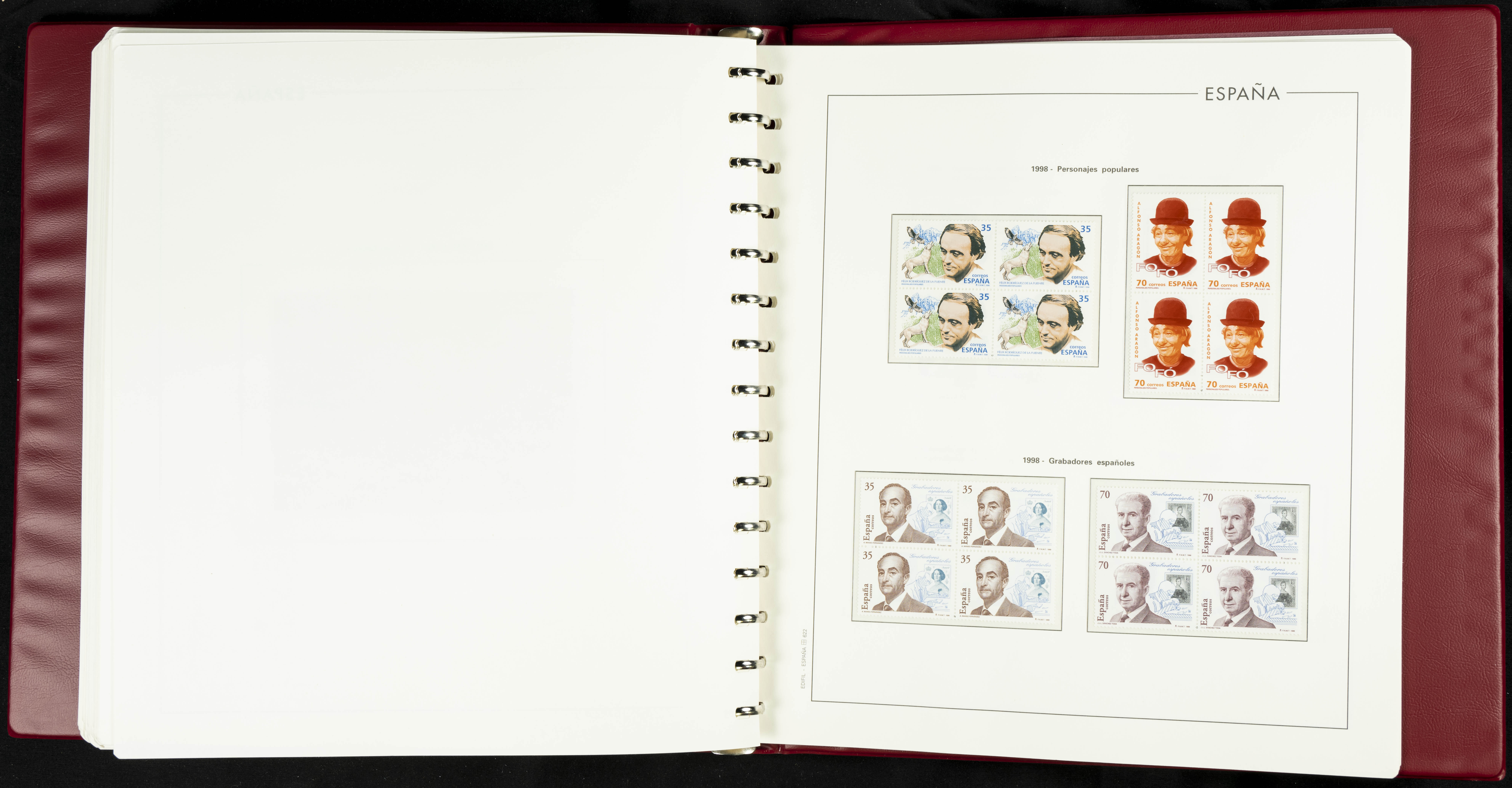 ★★(1976ca). Complete collection between 1976 and 1999, including the 2000 portion denominated exclusively in pesetas, in blocks of four (with a souvenir sheet), in mint condition (mounted in albums). HIGH CATALOGUE VALUE. TO BE EXAMINED.