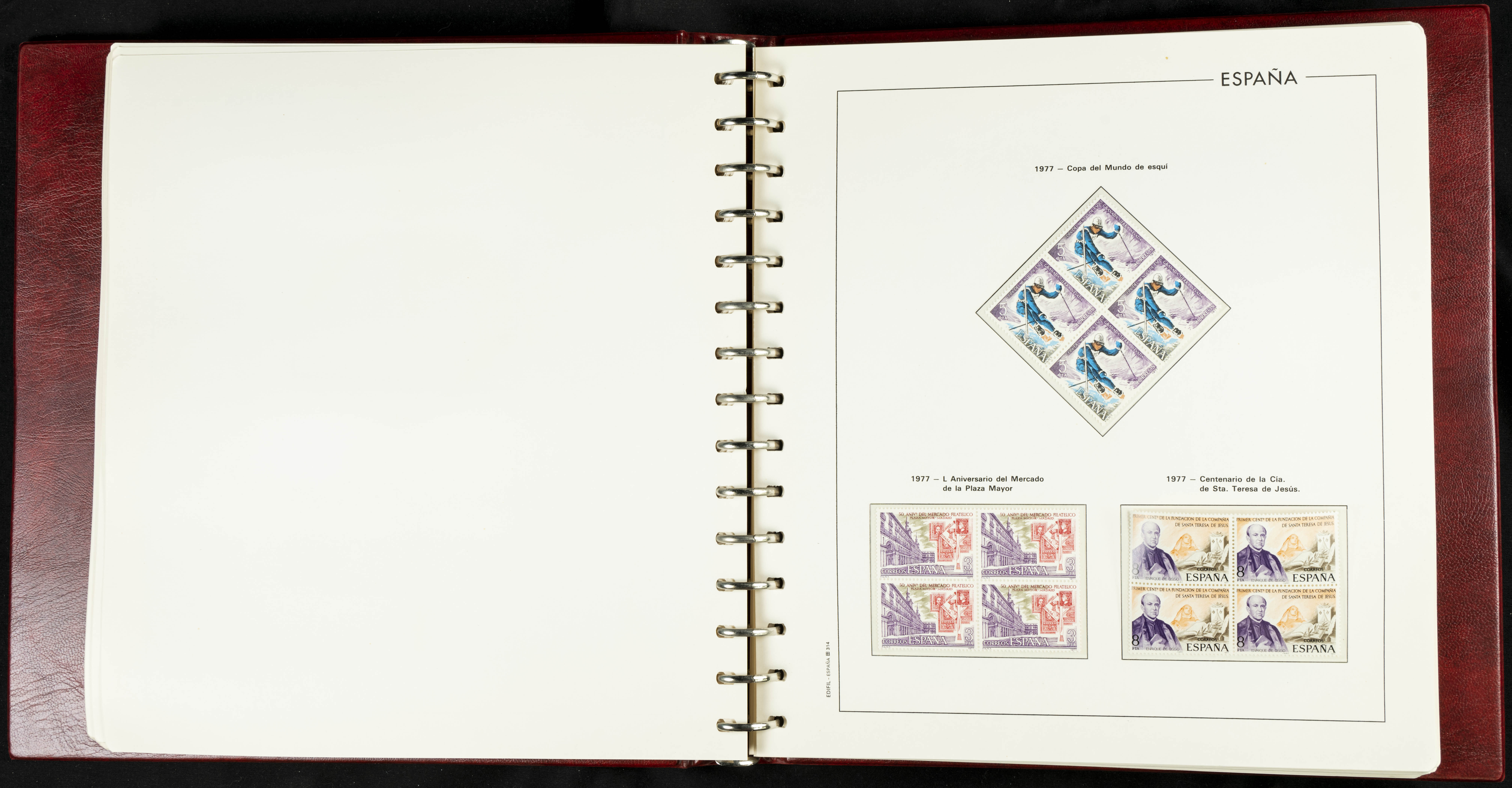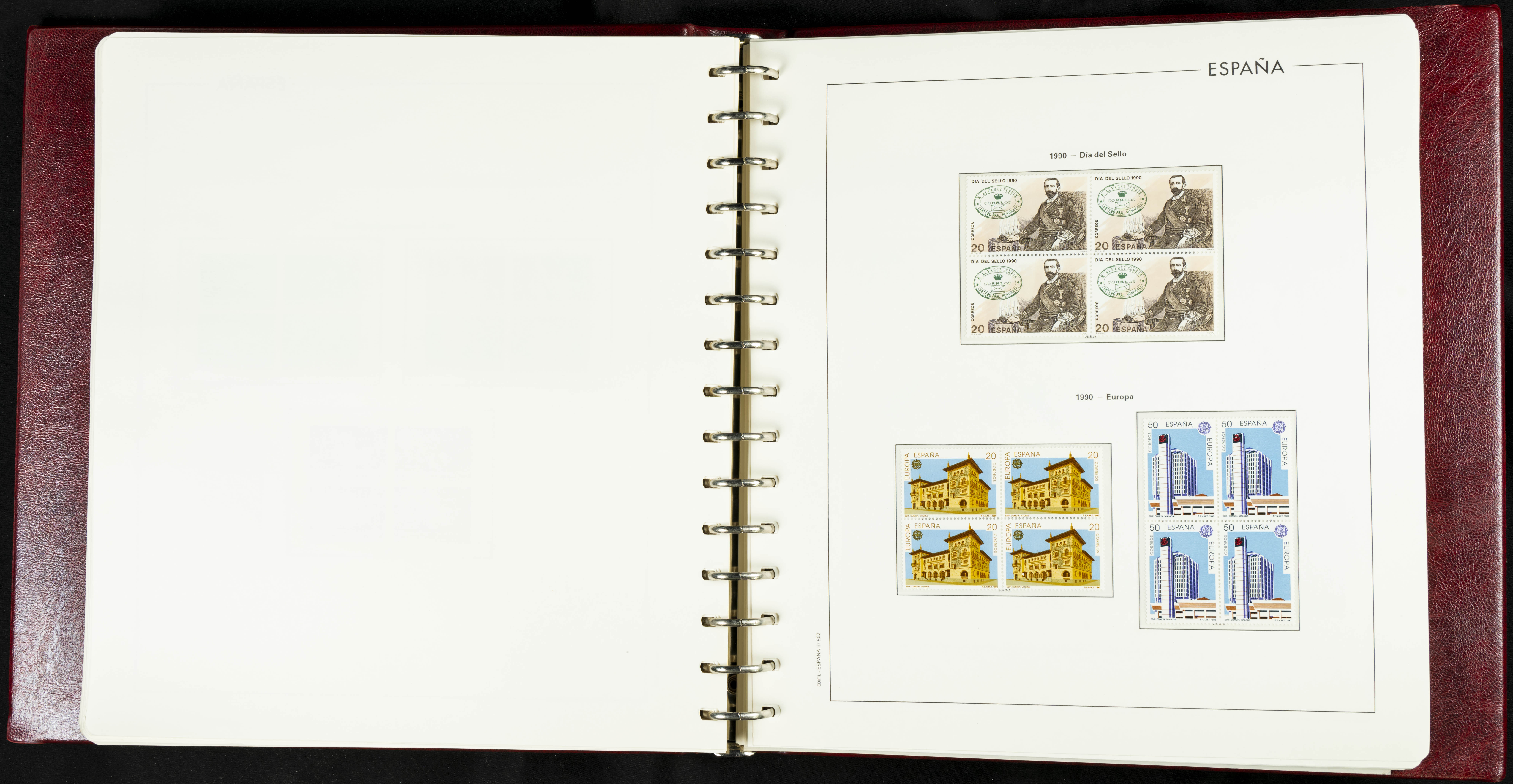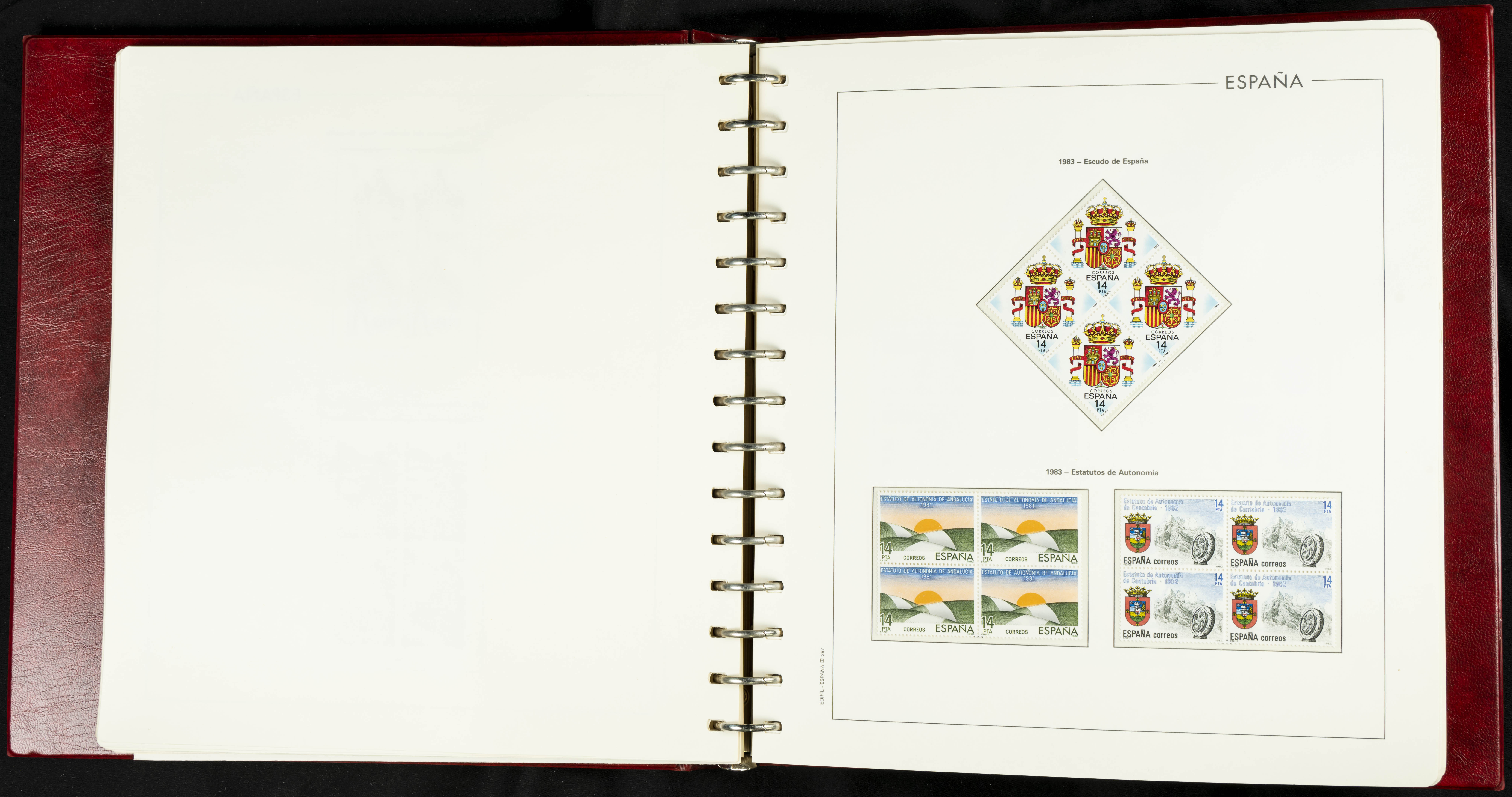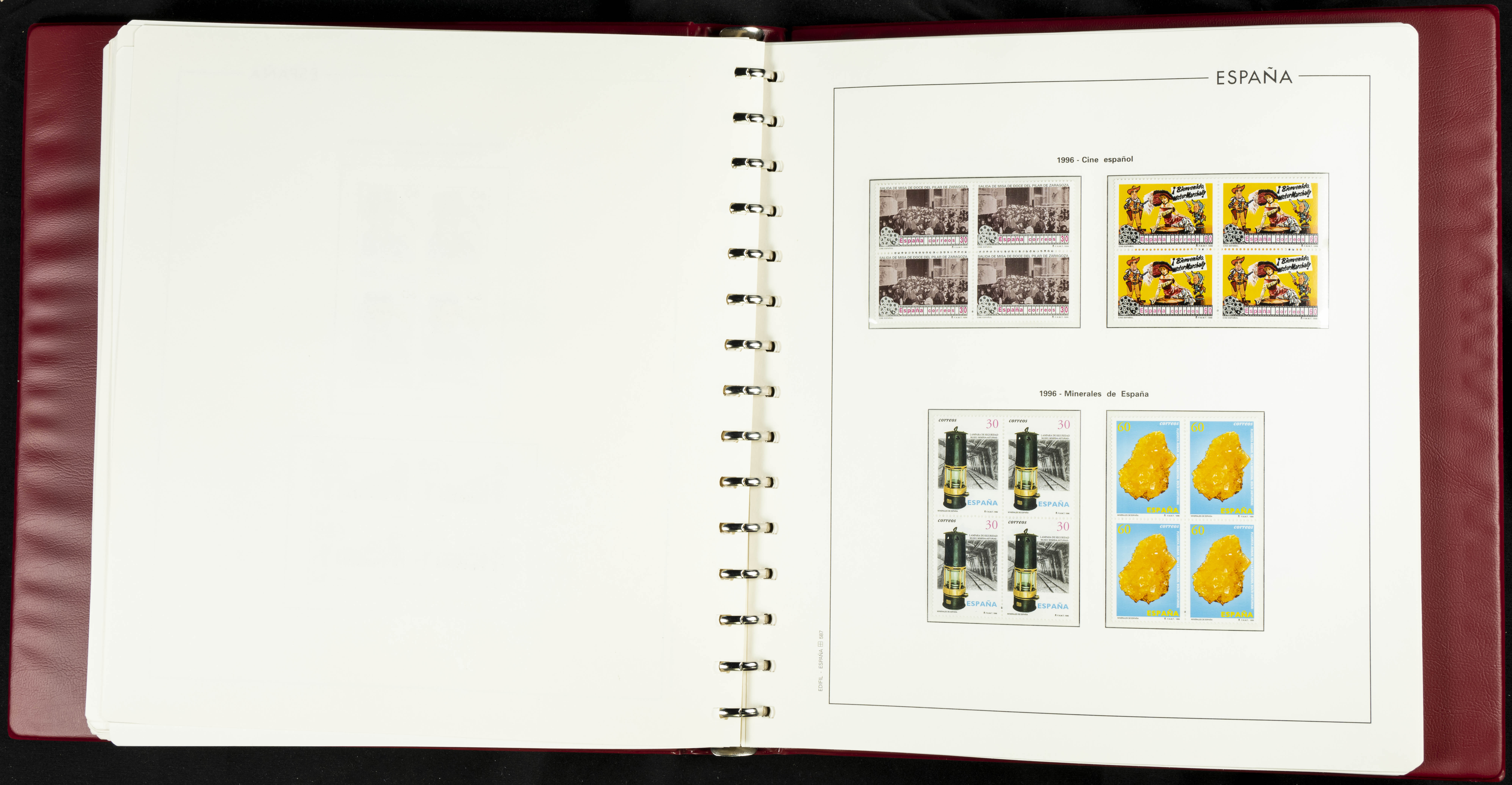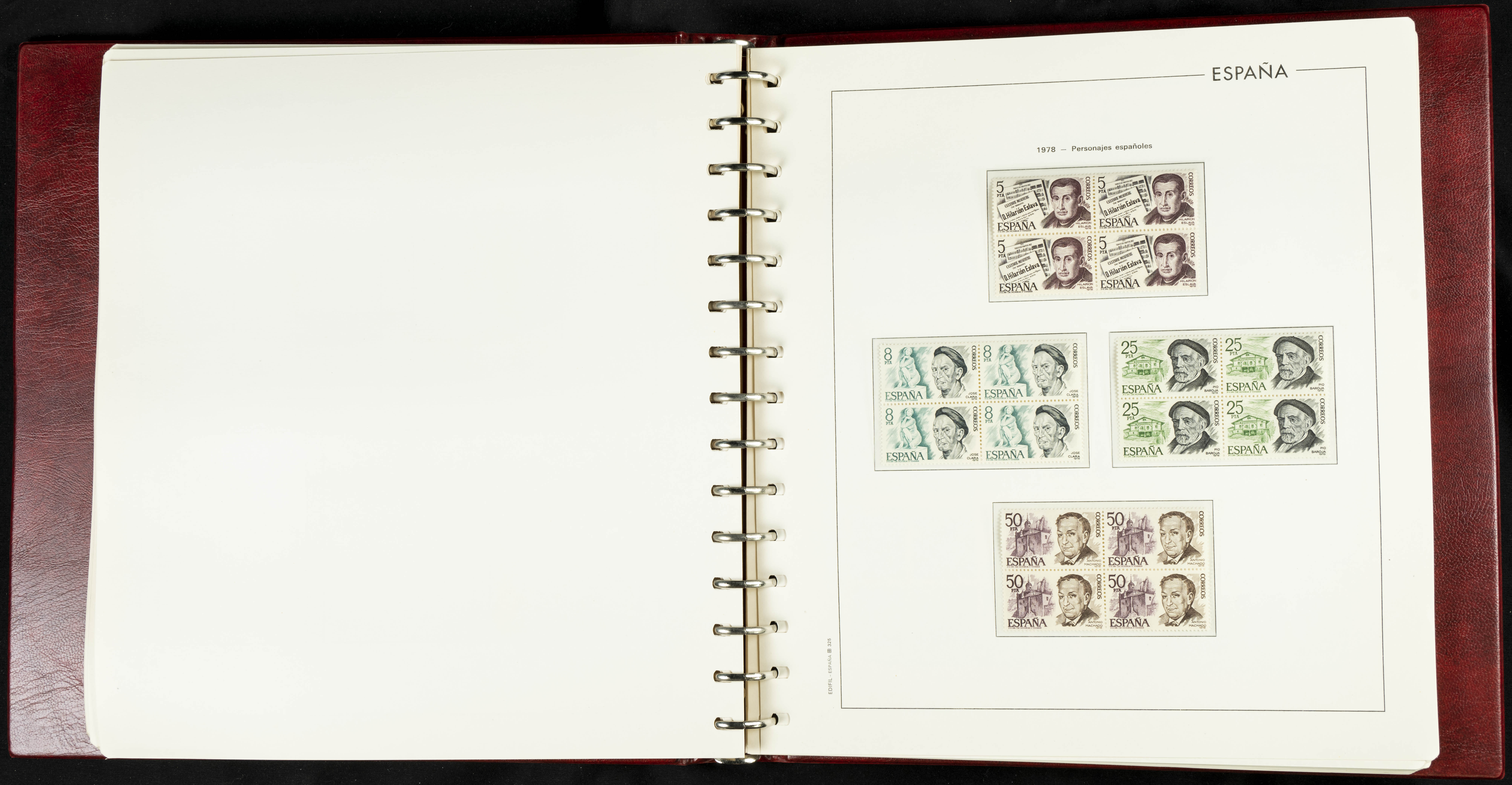 ★★(1976ca). Complete collection between 1976 and 1999, including the 2000 portion denominated exclusively in pesetas, in blocks of four (with a souvenir sheet), in mint condition (mounted in albums). HIGH CATALOGUE VALUE. TO BE EXAMINED.