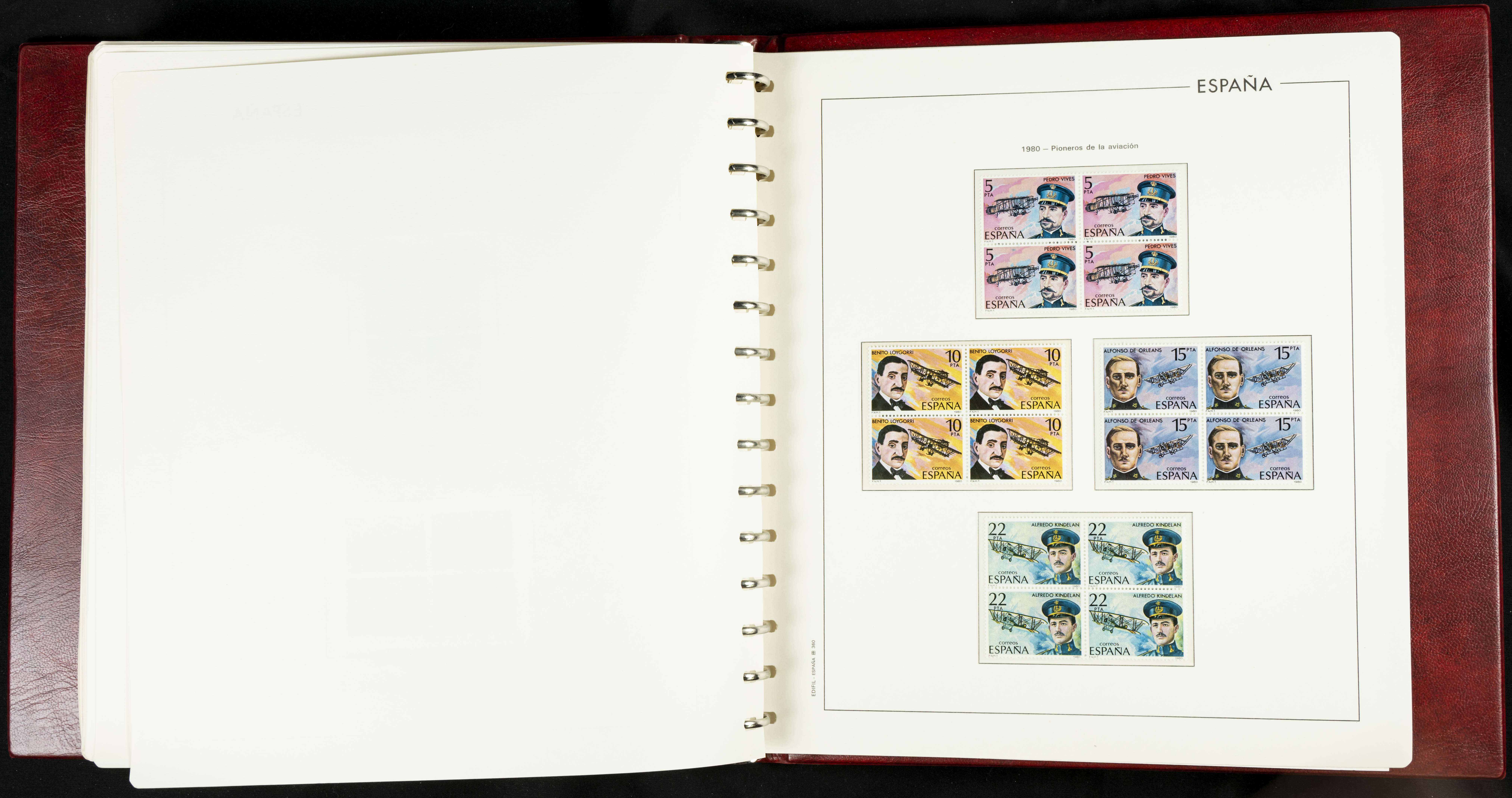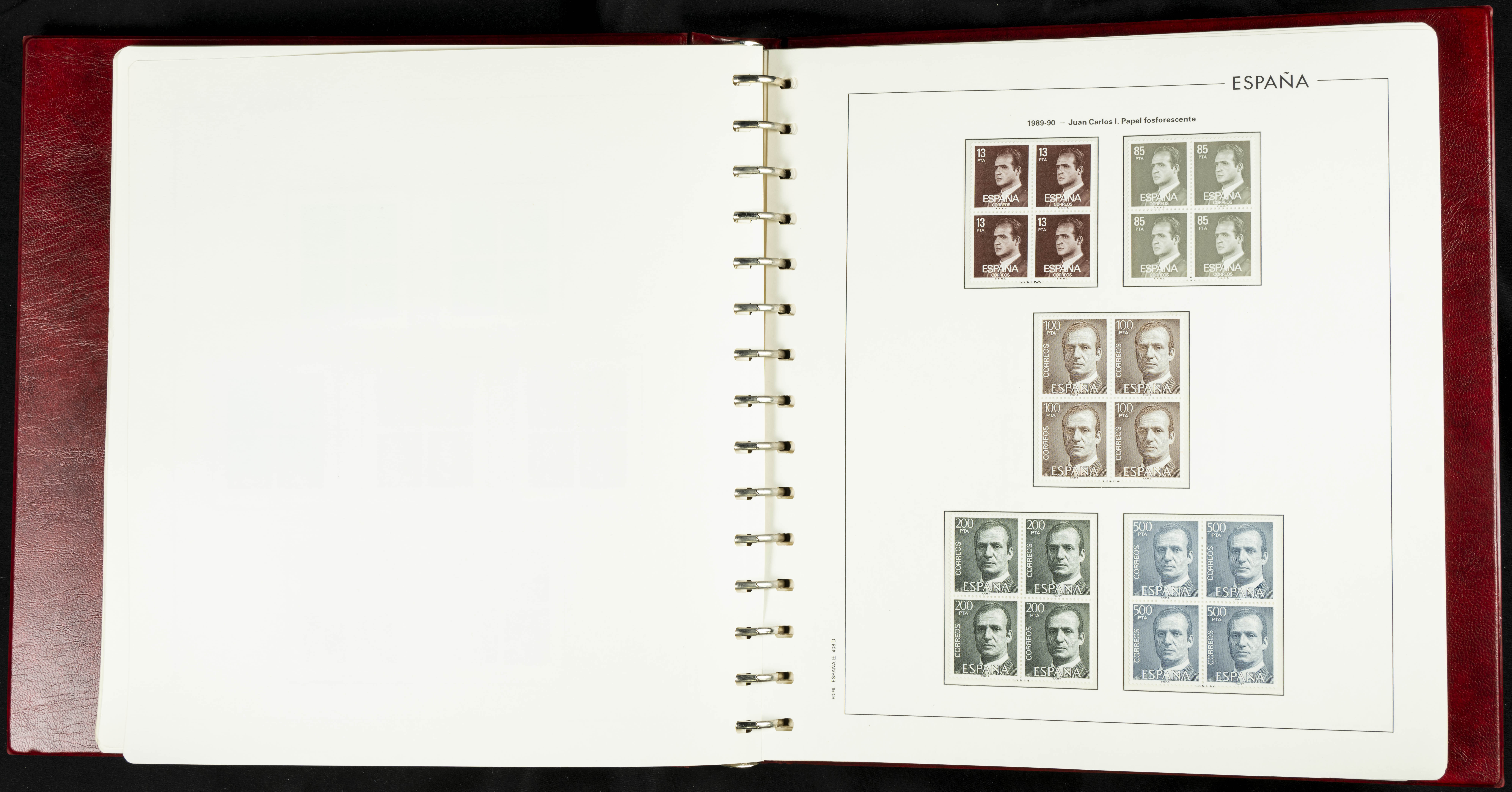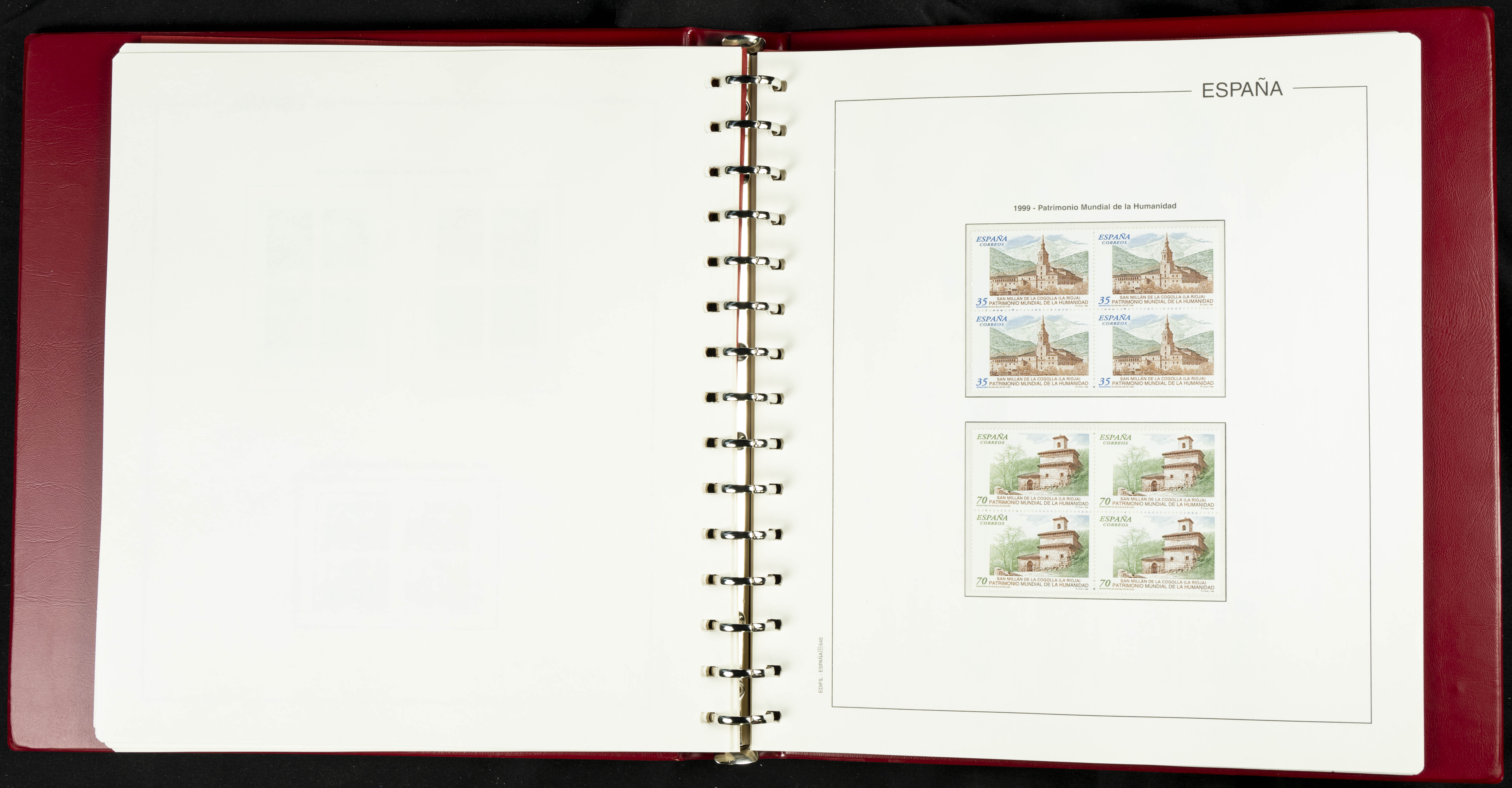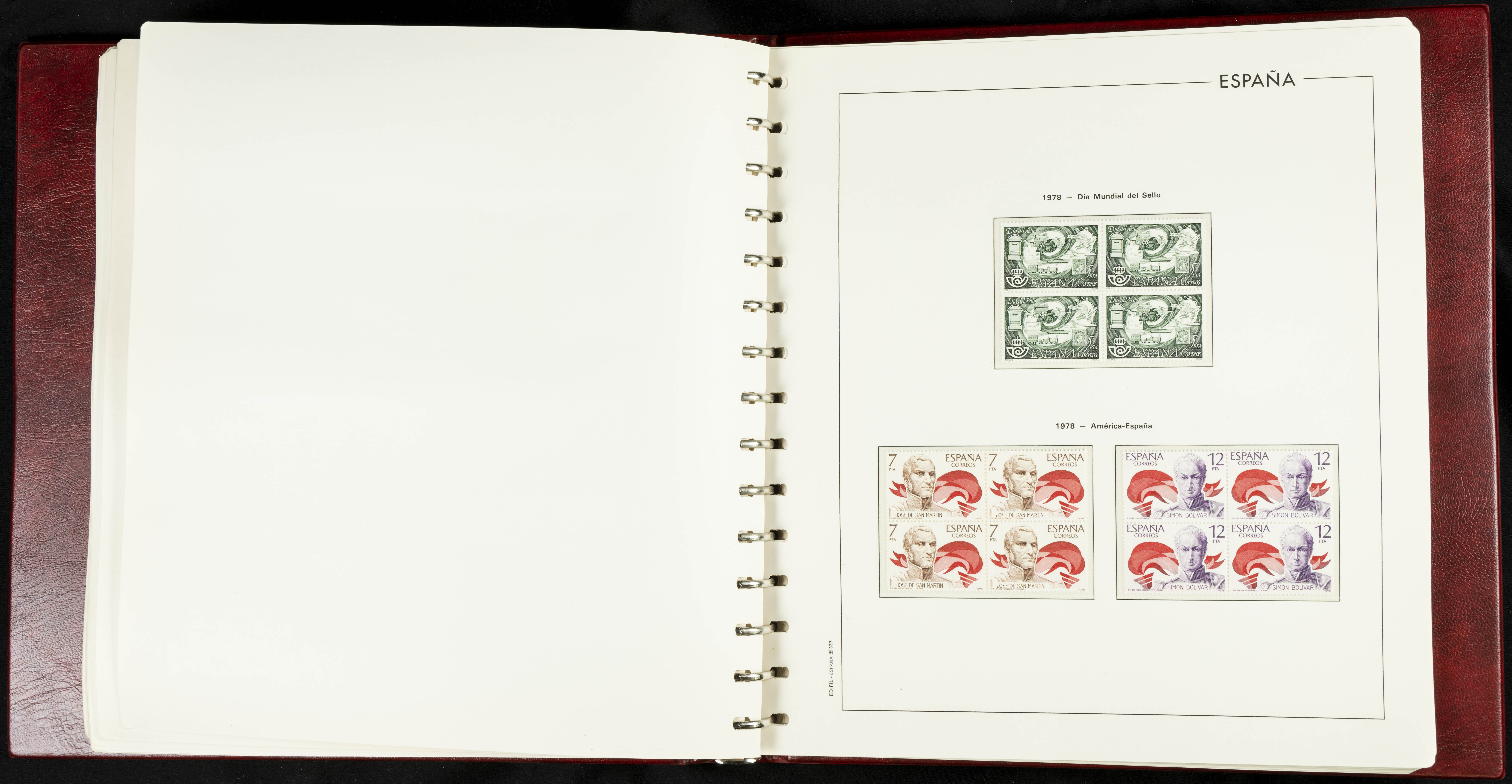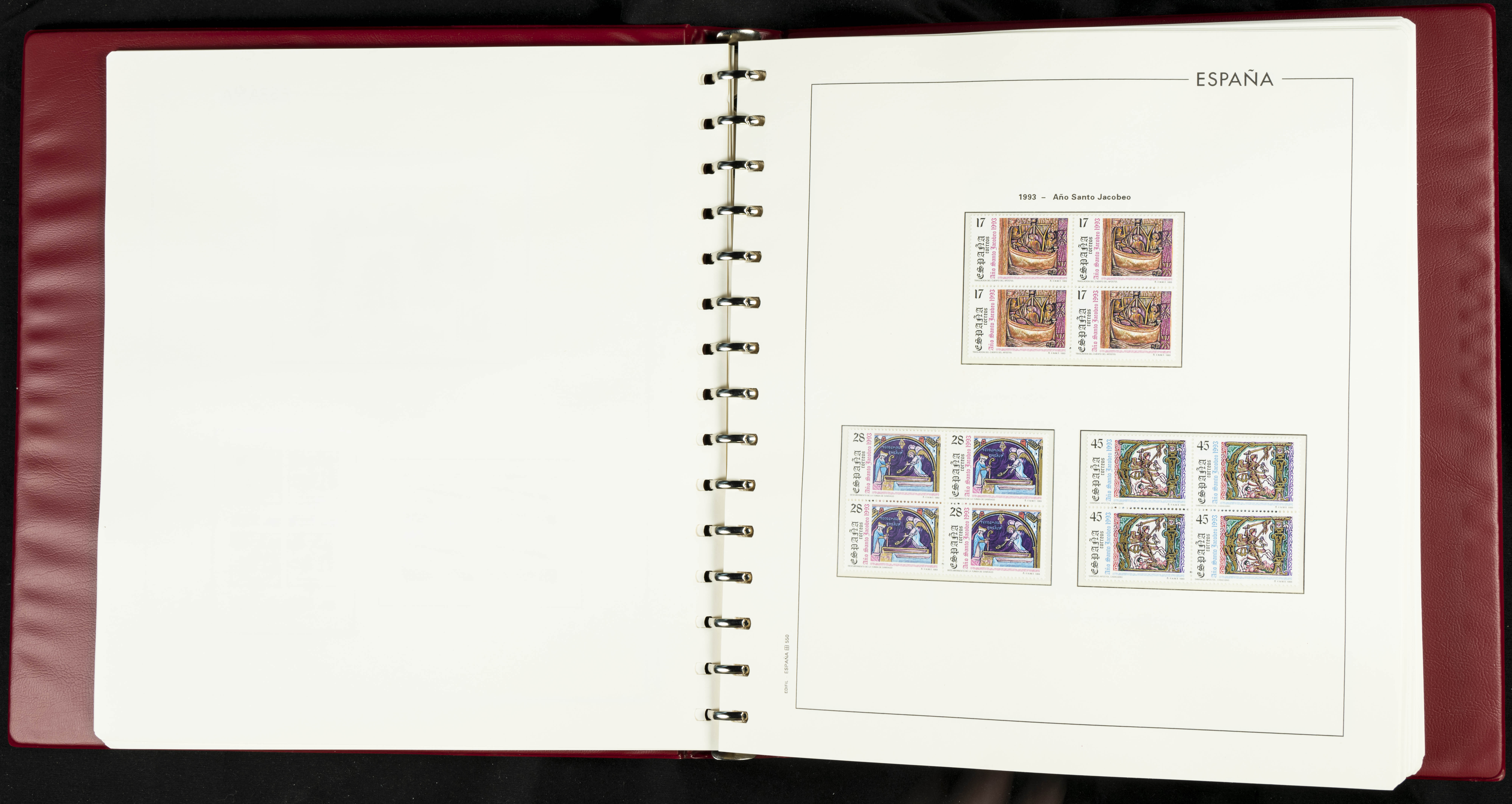 ★★(1976ca). Complete collection between 1976 and 1999, including the 2000 portion denominated exclusively in pesetas, in blocks of four (with a souvenir sheet), in mint condition (mounted in albums). HIGH CATALOGUE VALUE. TO BE EXAMINED.