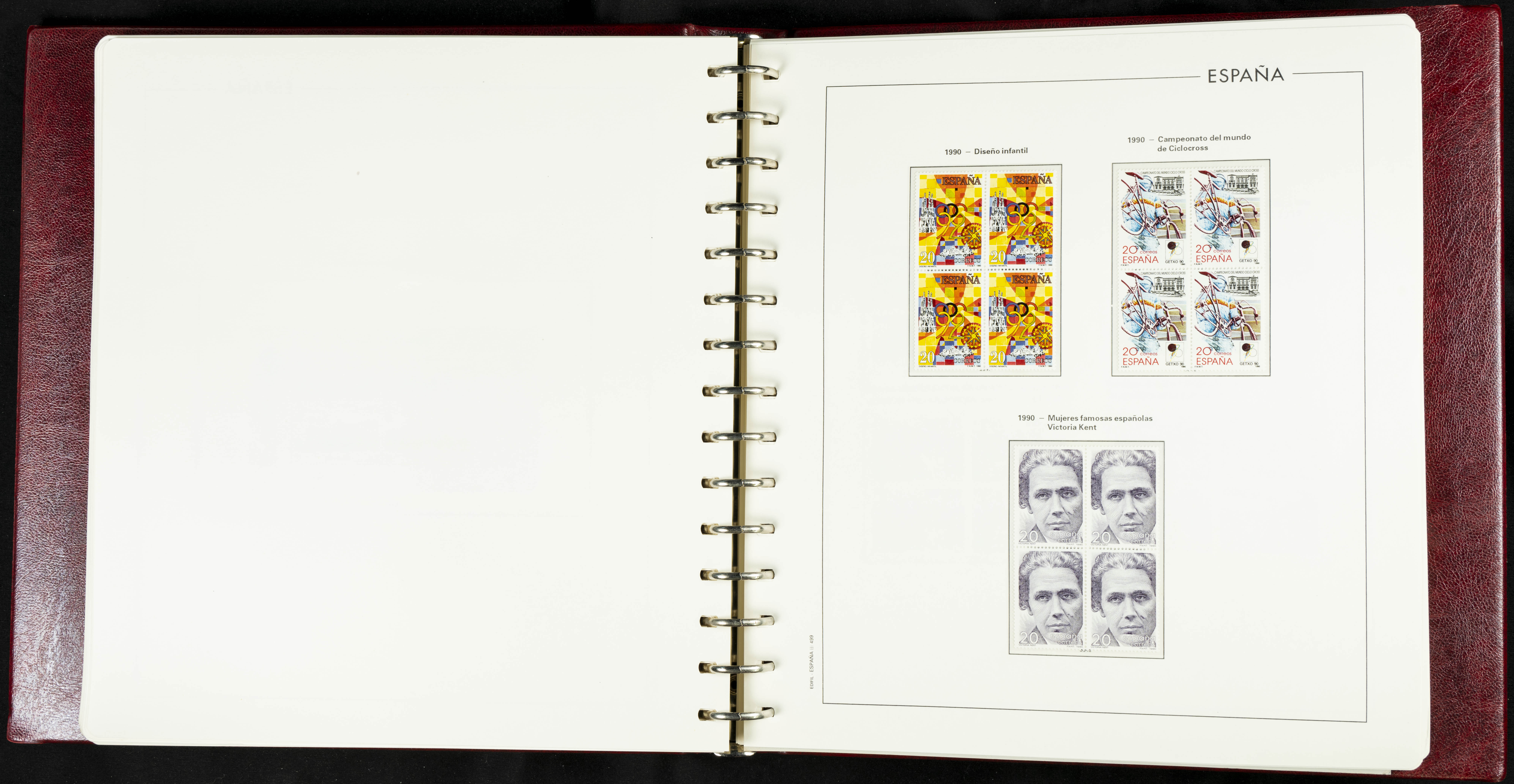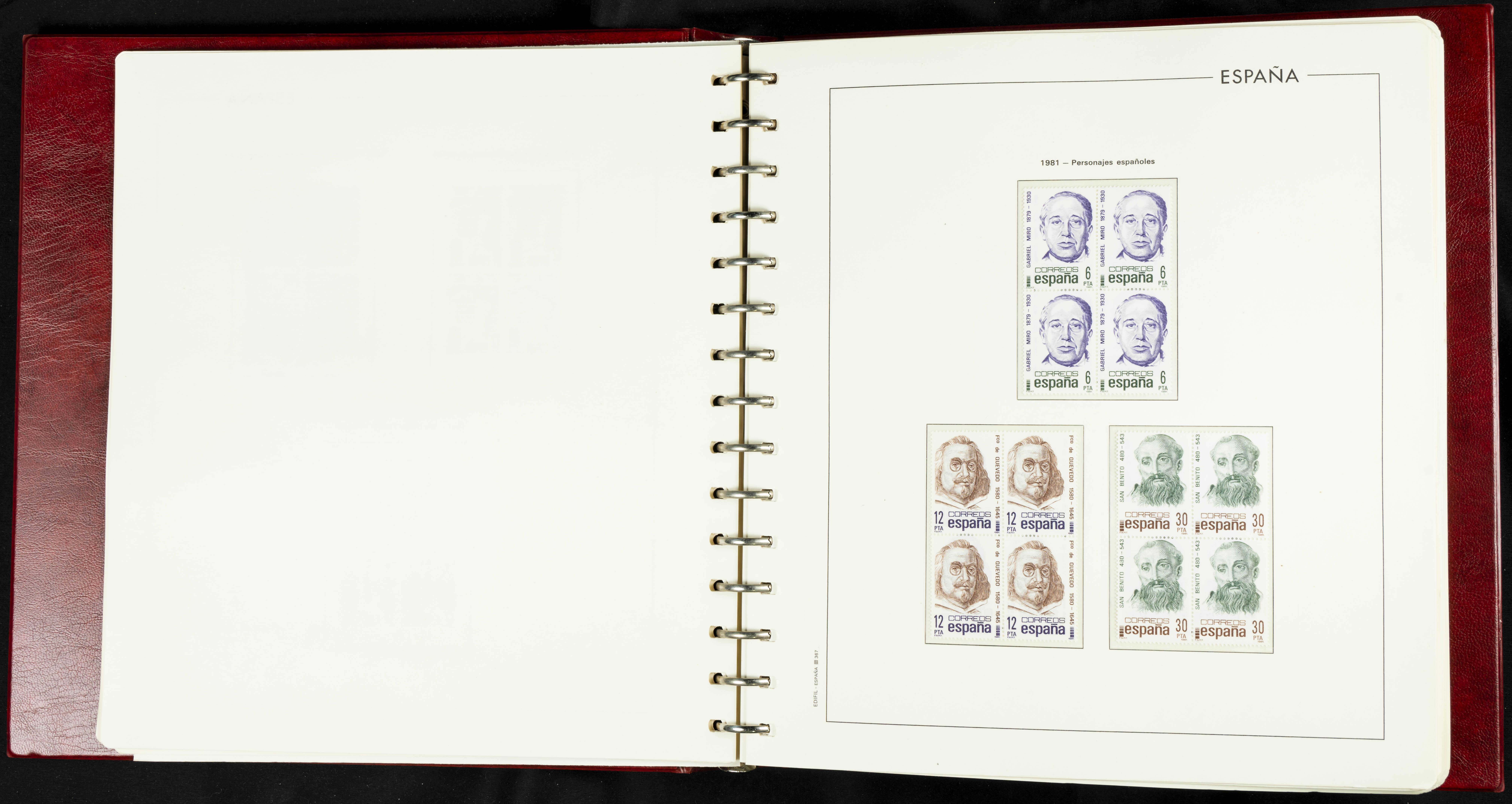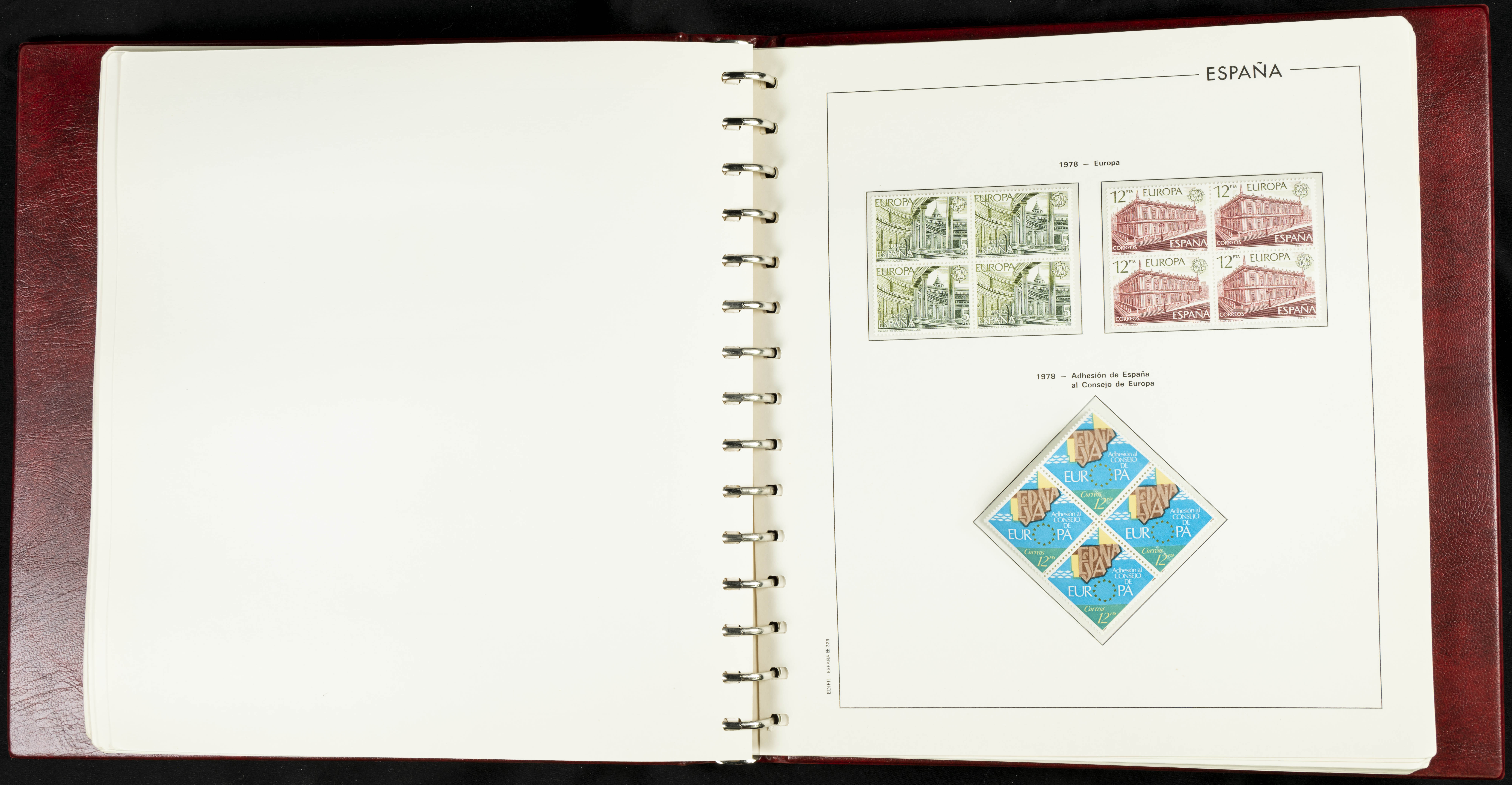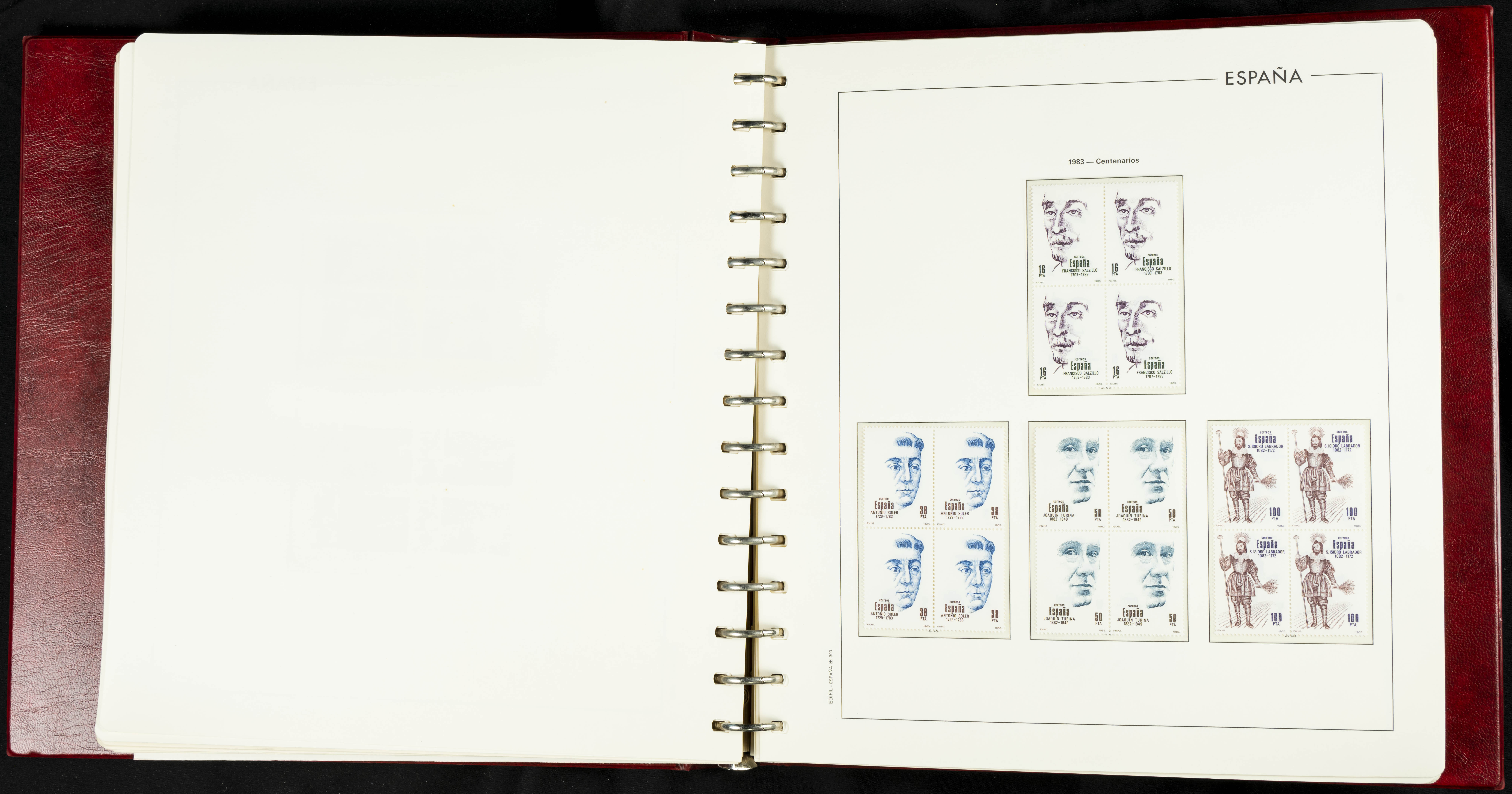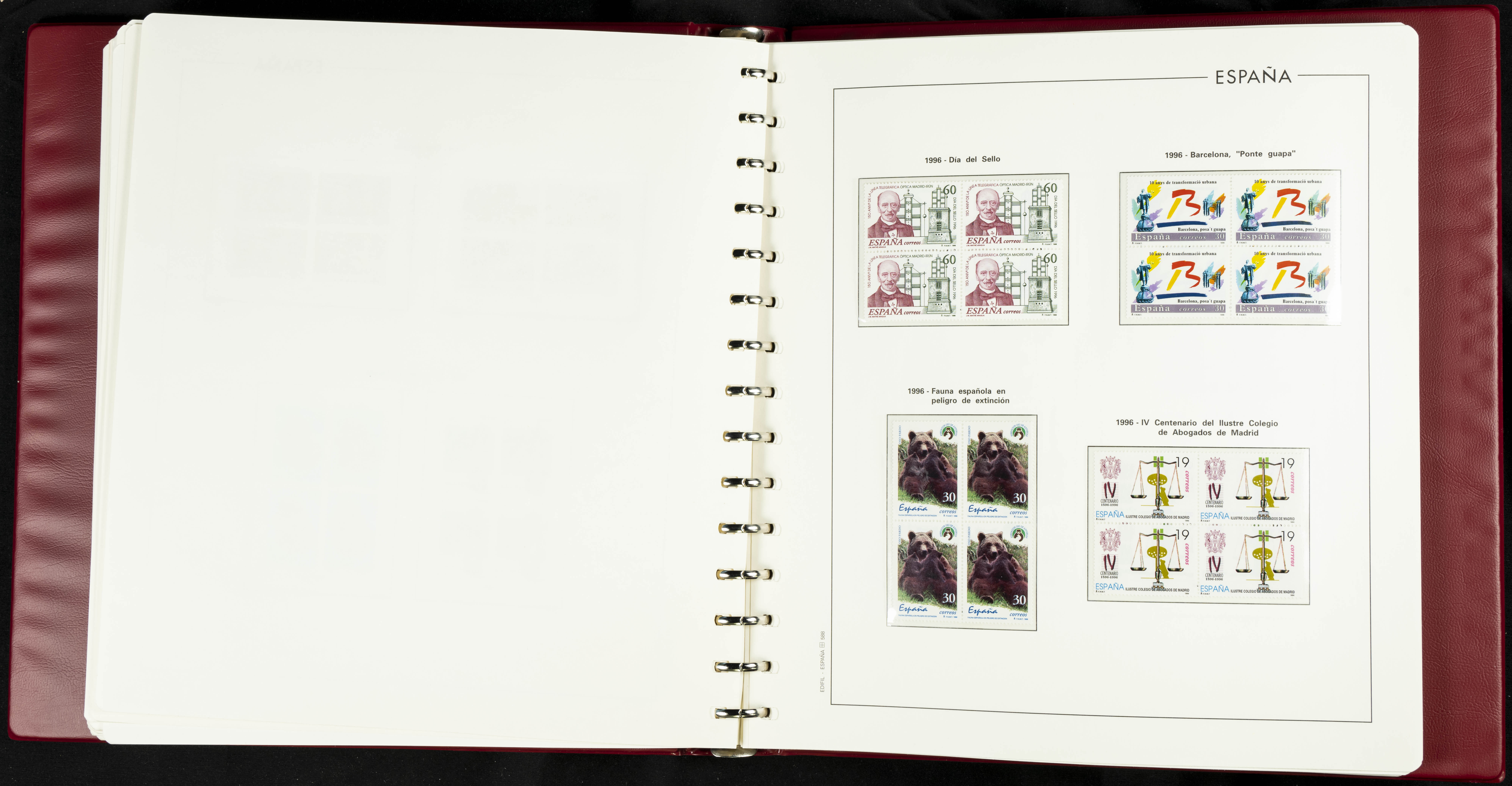 ★★(1976ca). Complete collection between 1976 and 1999, including the 2000 portion denominated exclusively in pesetas, in blocks of four (with a souvenir sheet), in mint condition (mounted in albums). HIGH CATALOGUE VALUE. TO BE EXAMINED.