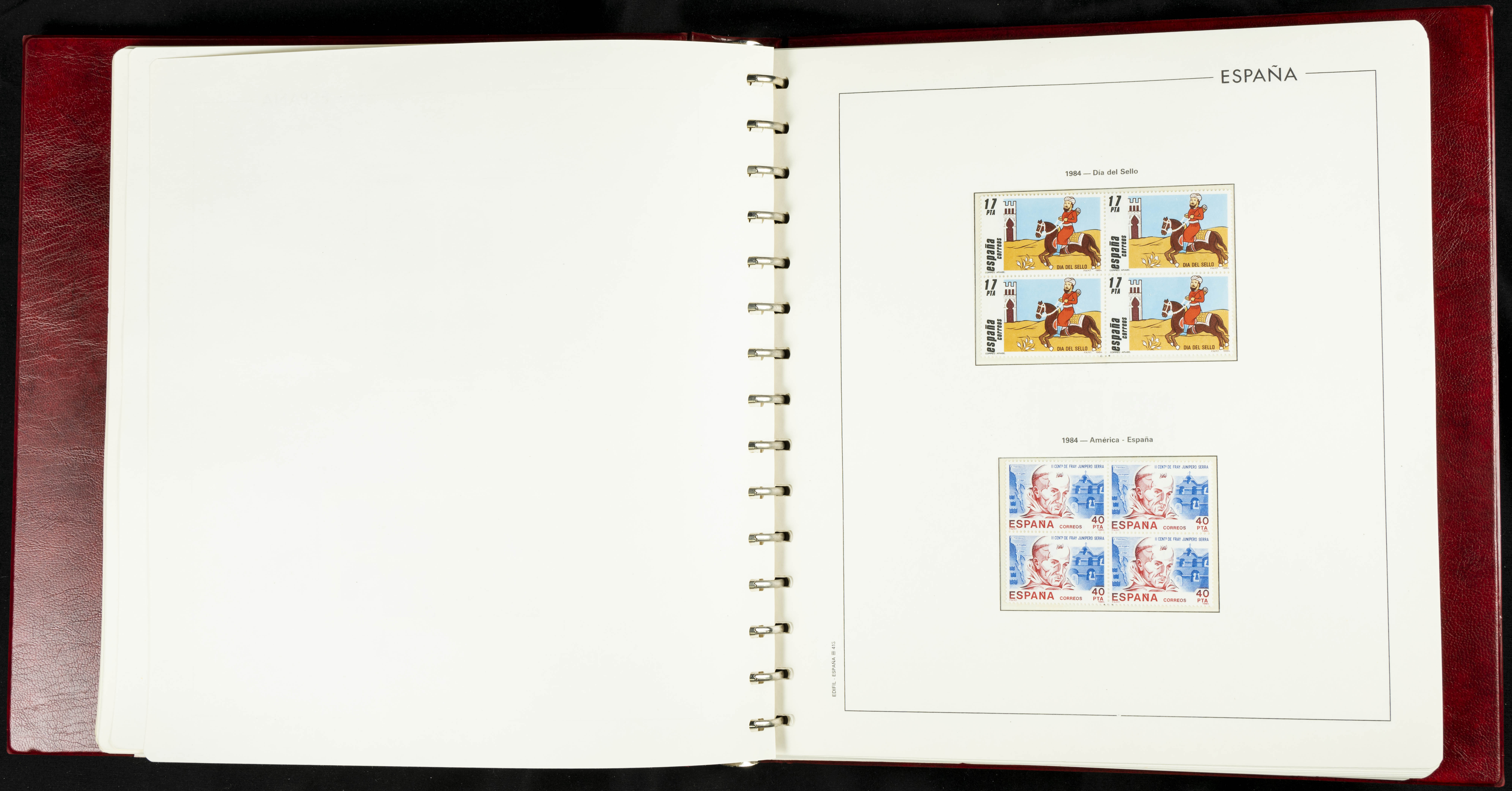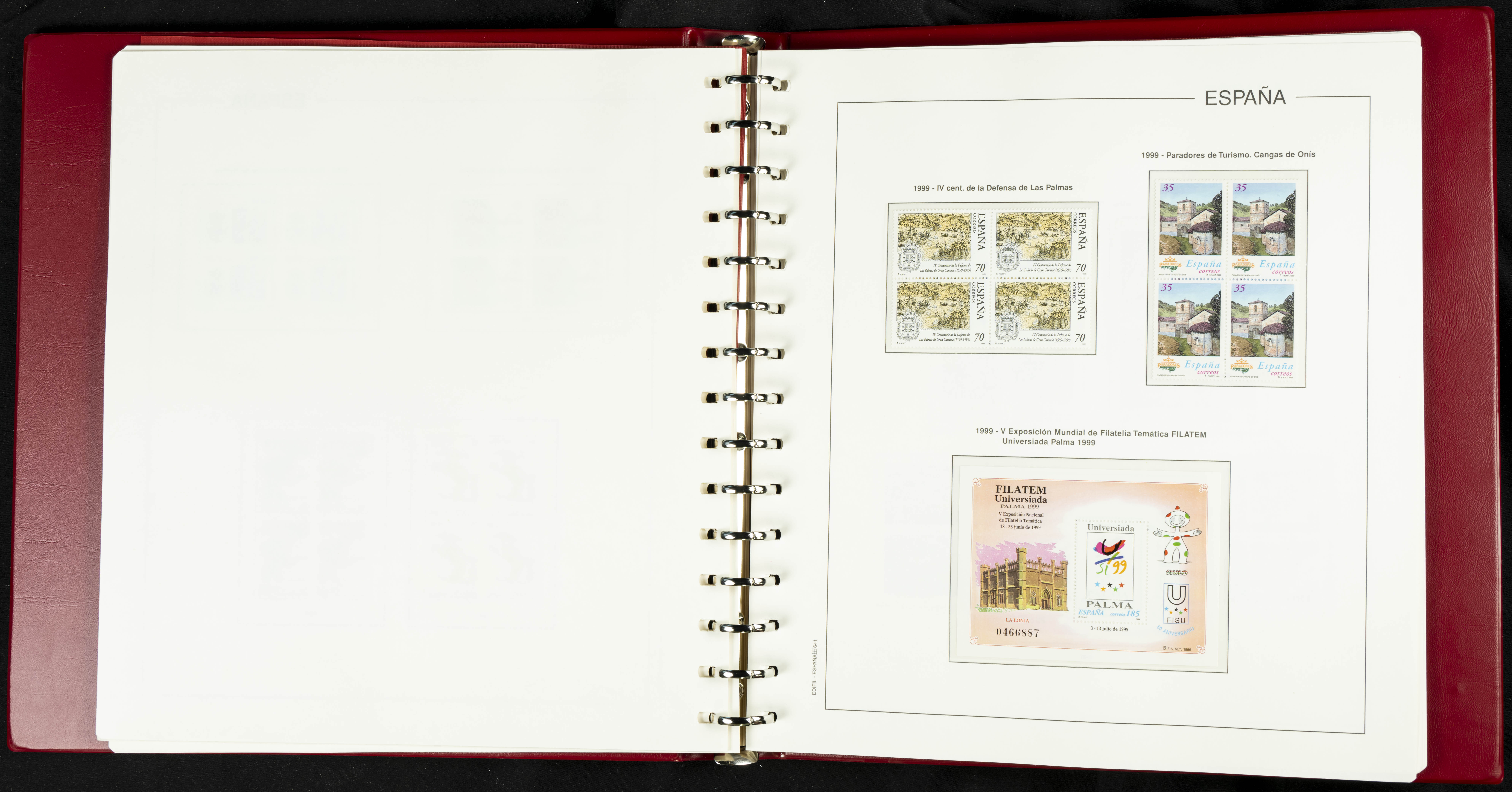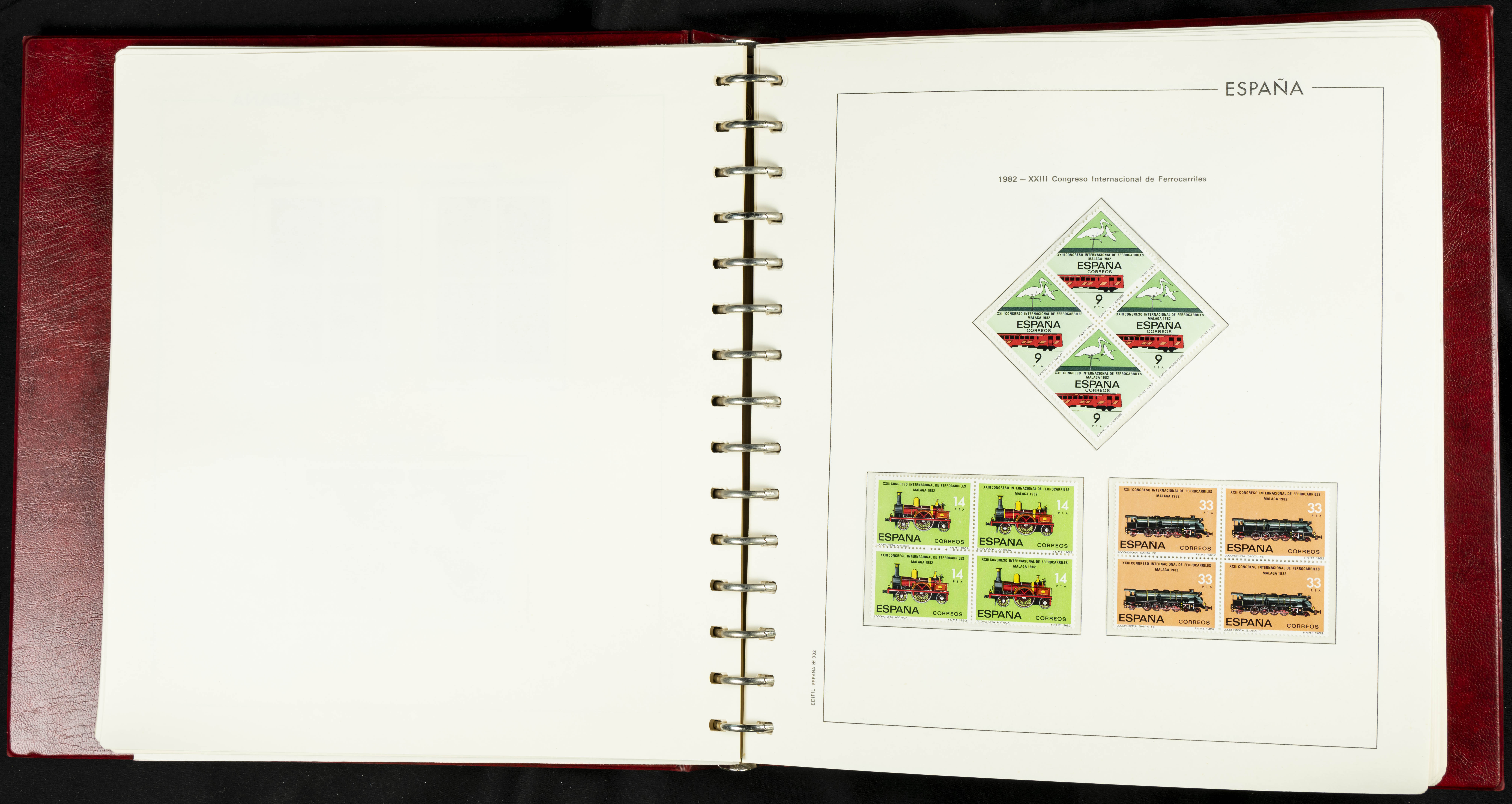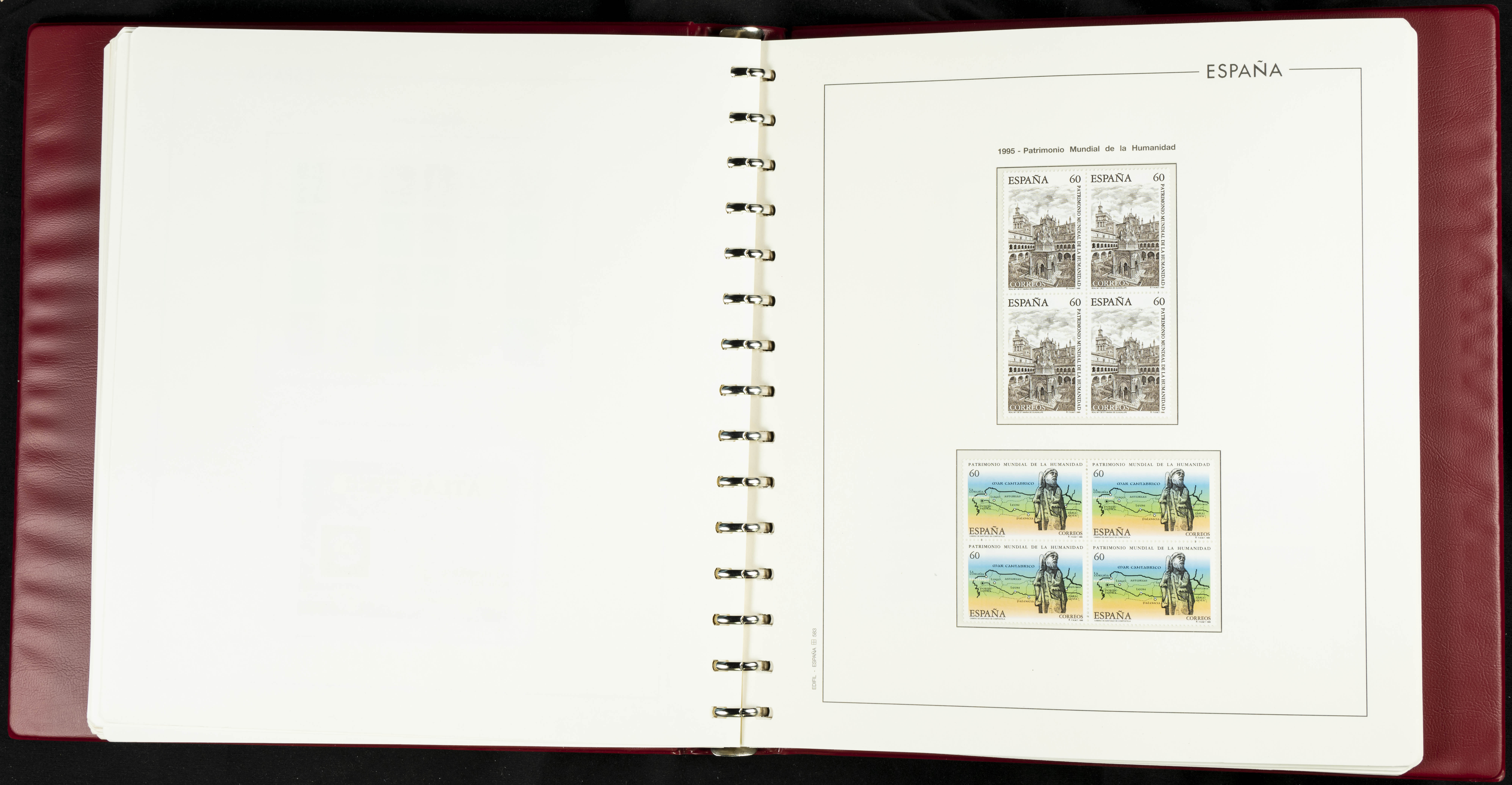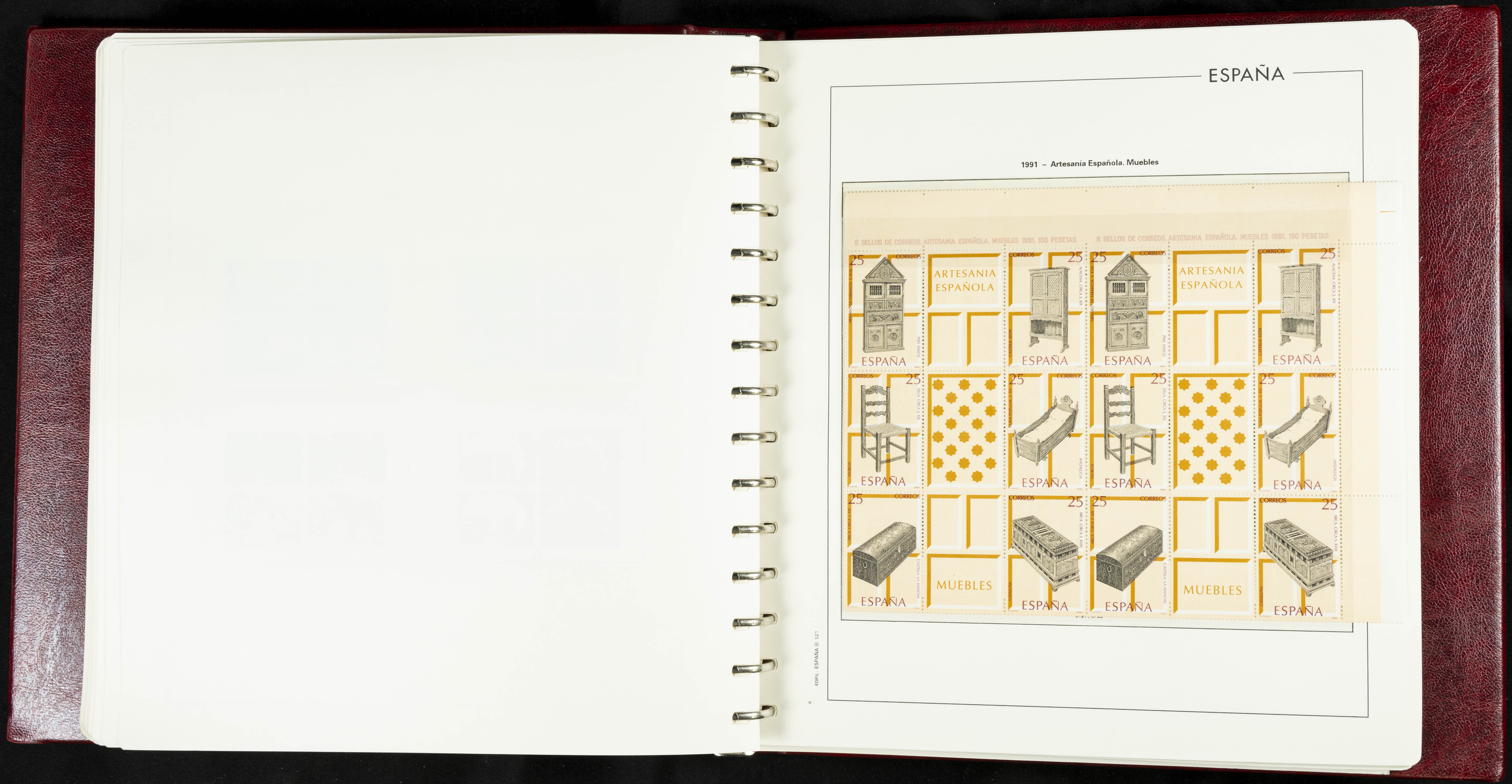 ★★(1976ca). Complete collection between 1976 and 1999, including the 2000 portion denominated exclusively in pesetas, in blocks of four (with a souvenir sheet), in mint condition (mounted in albums). HIGH CATALOGUE VALUE. TO BE EXAMINED.