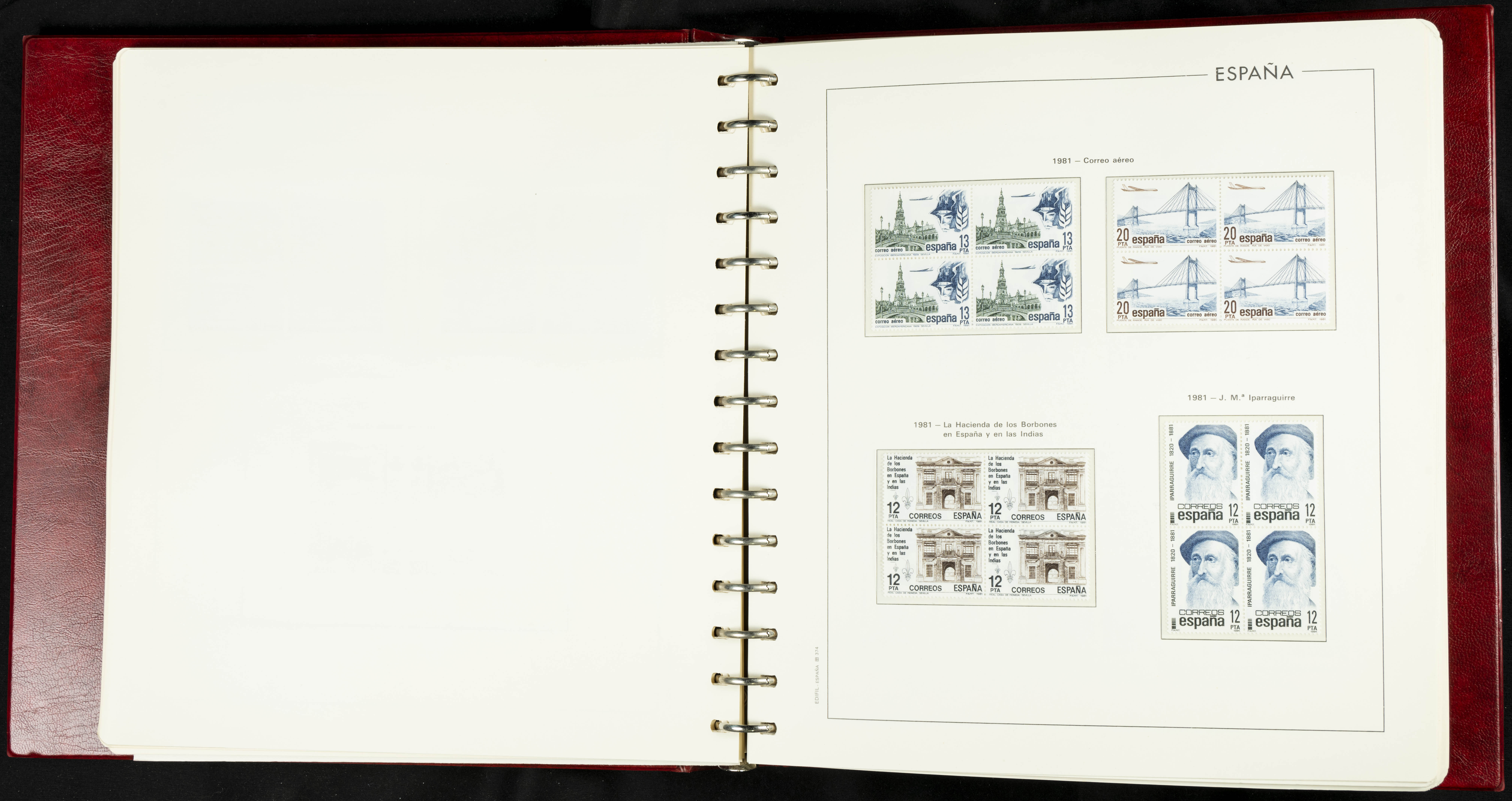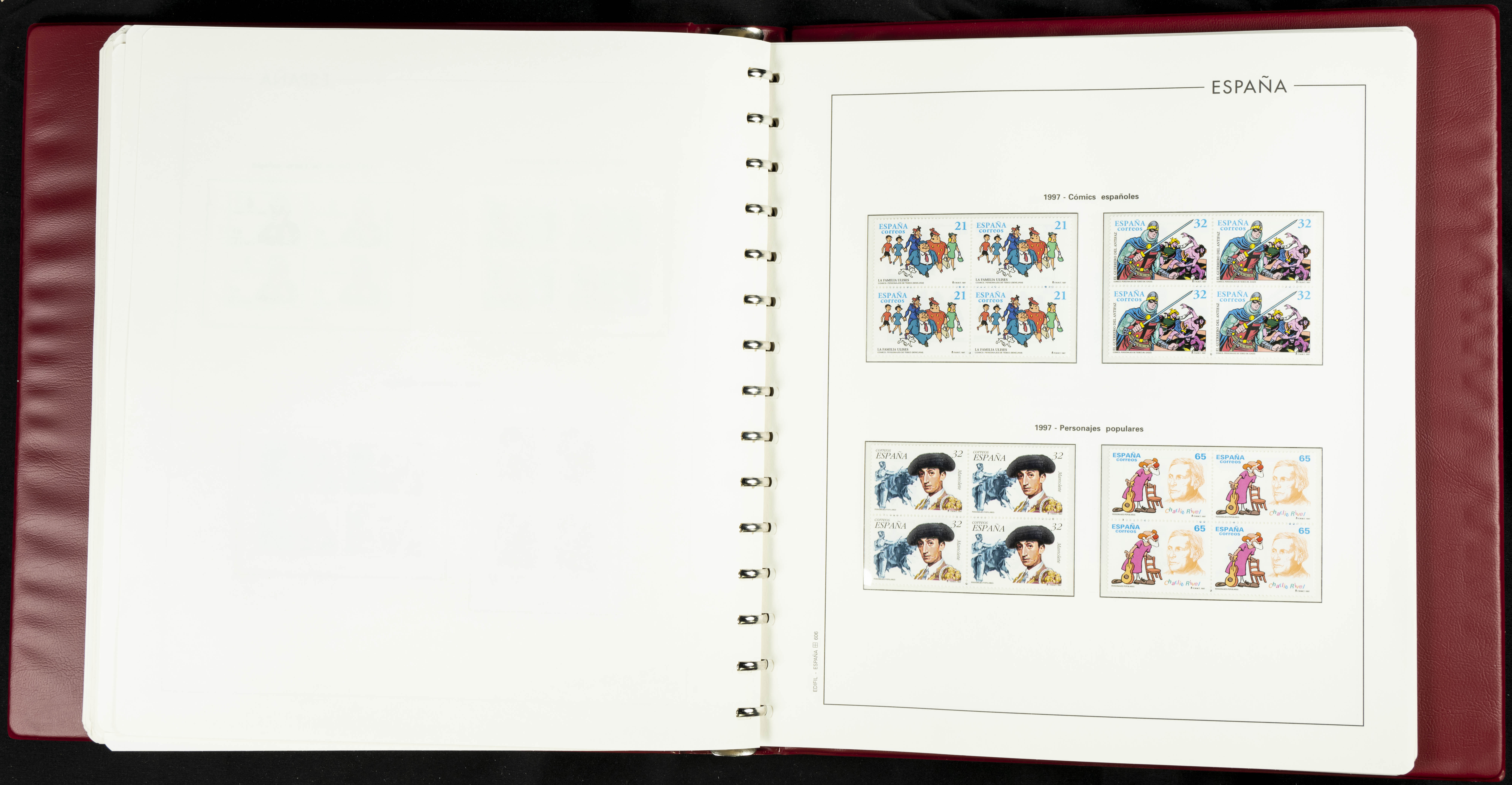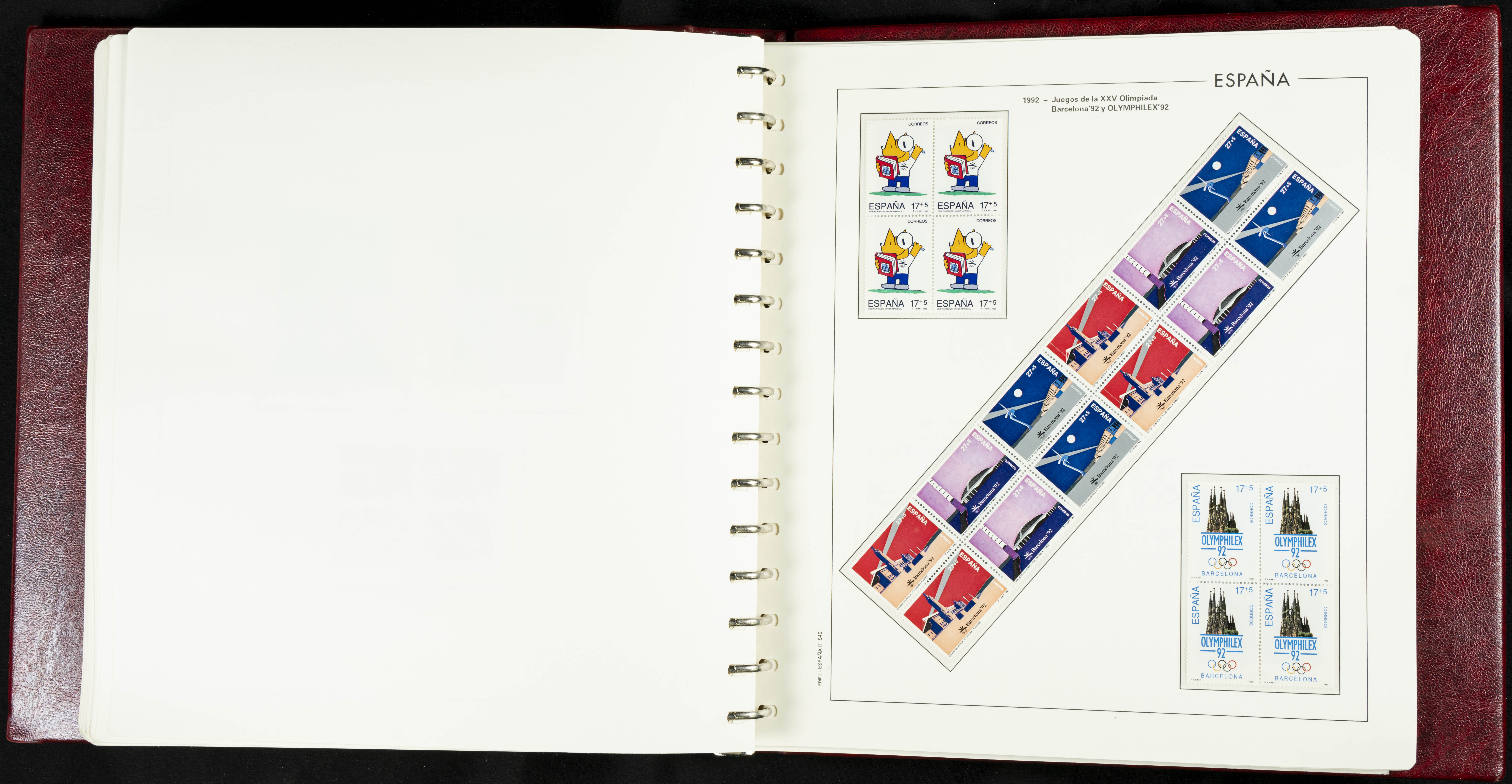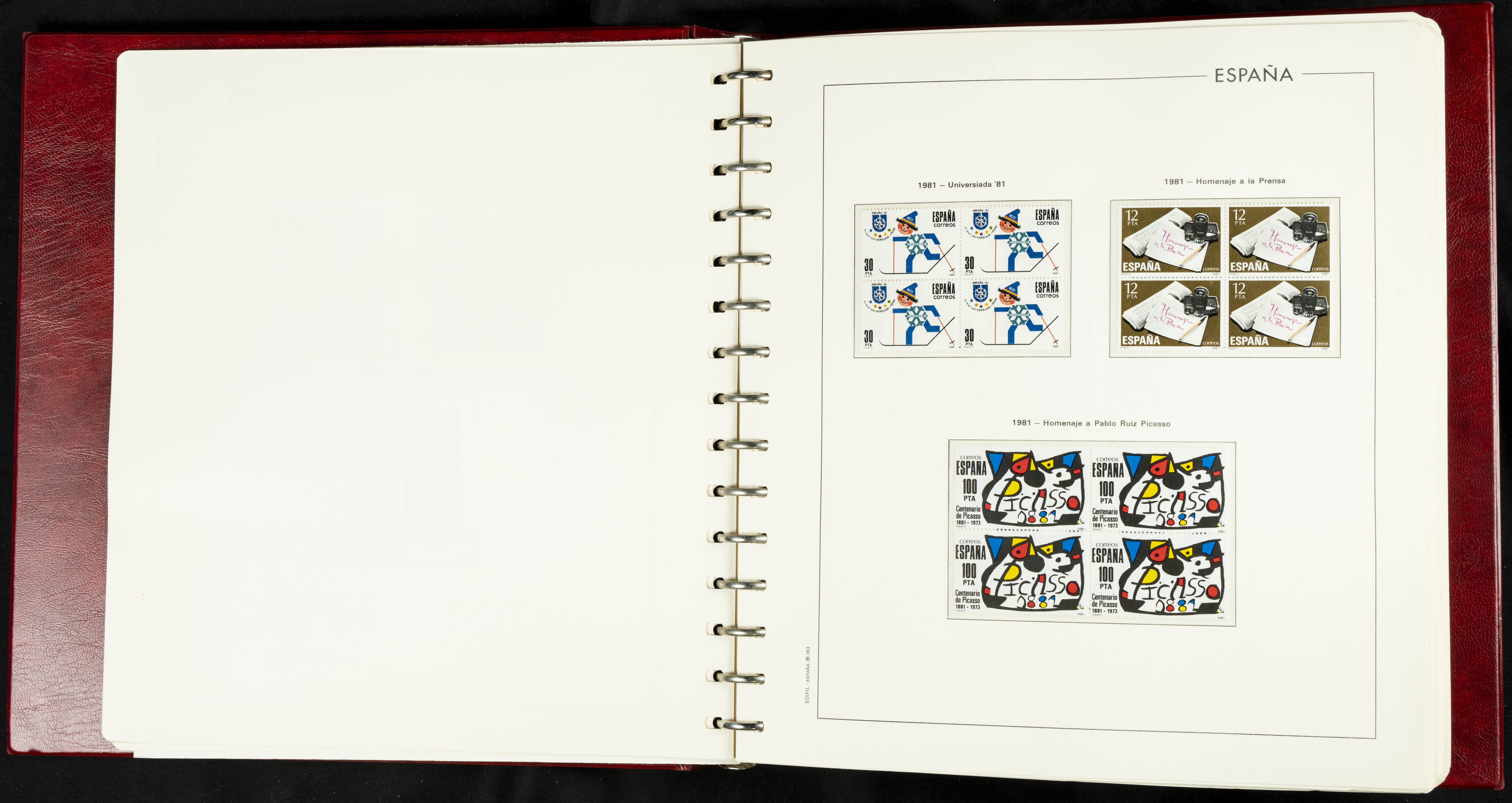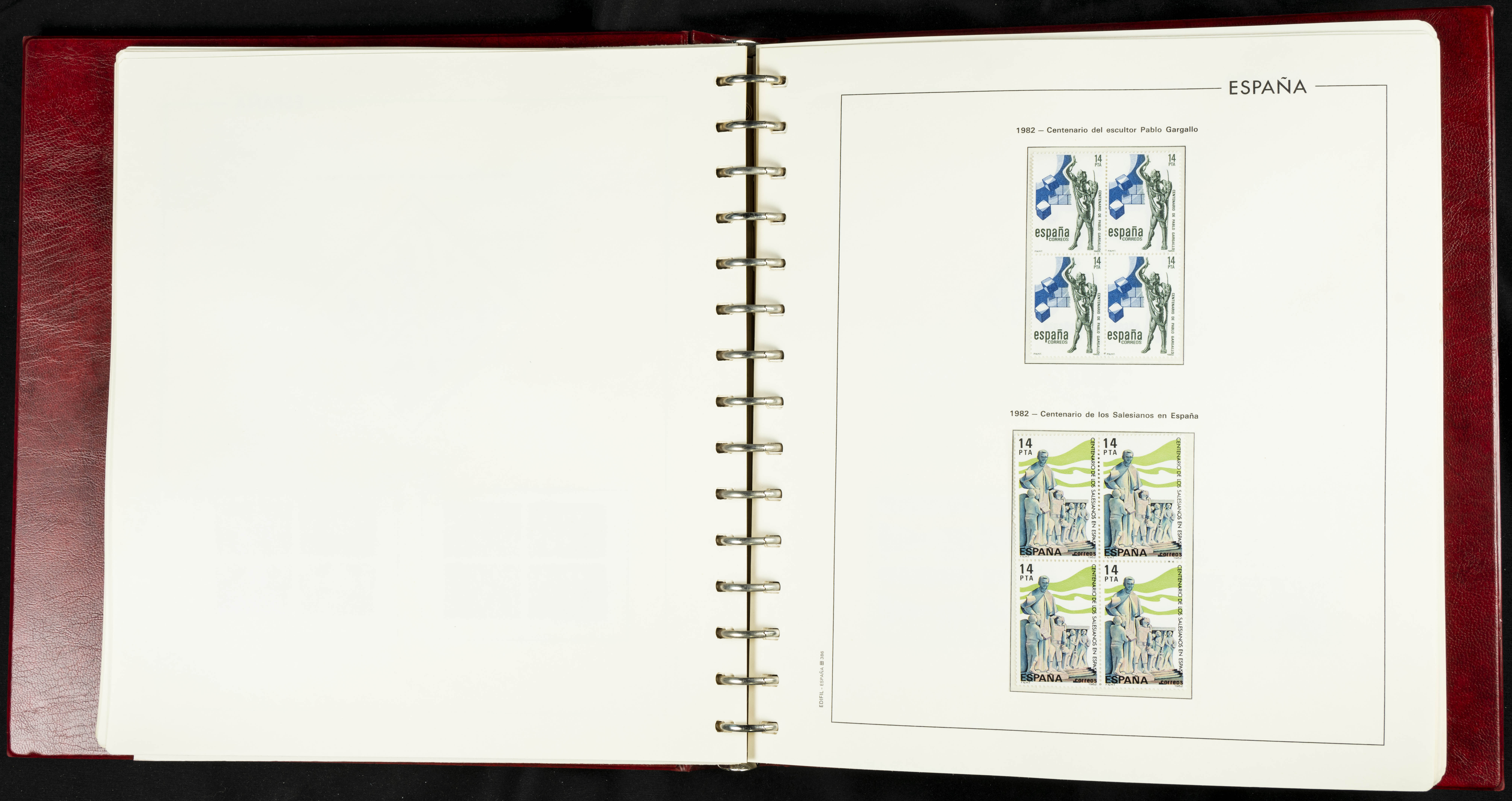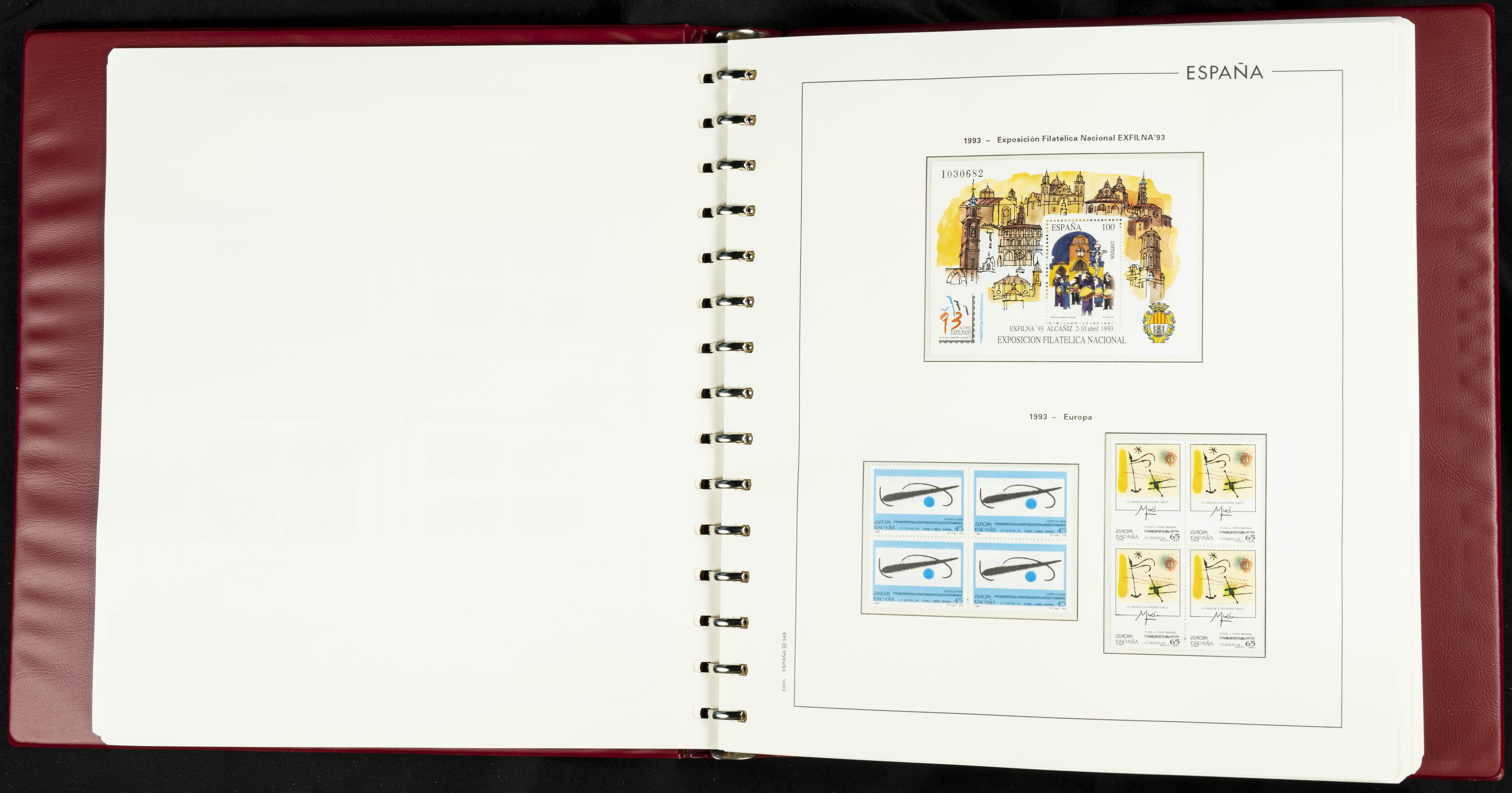★★(1976ca). Complete collection between 1976 and 1999, including the 2000 portion denominated exclusively in pesetas, in blocks of four (with a souvenir sheet), in mint condition (mounted in albums). HIGH CATALOGUE VALUE. TO BE EXAMINED.