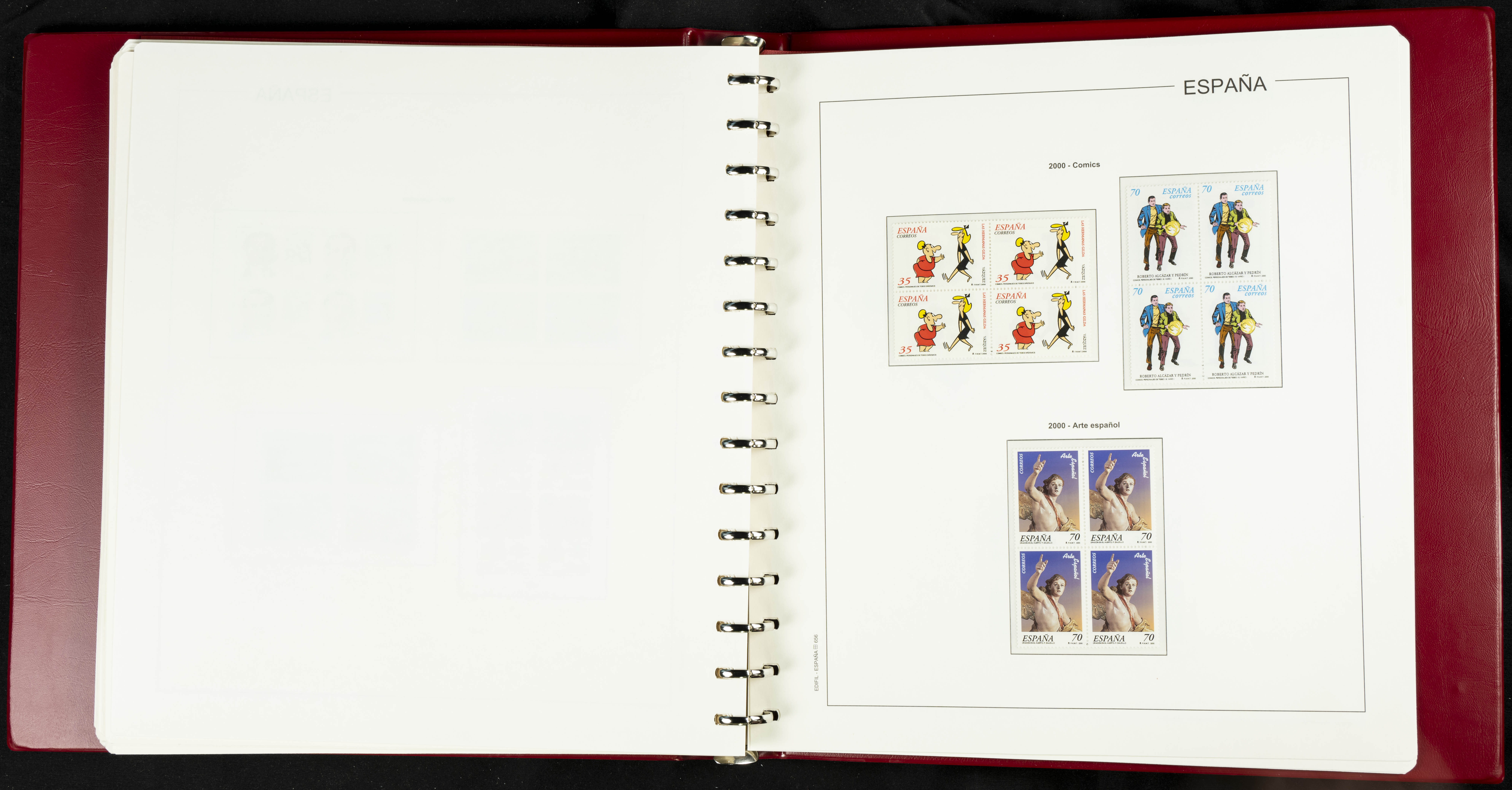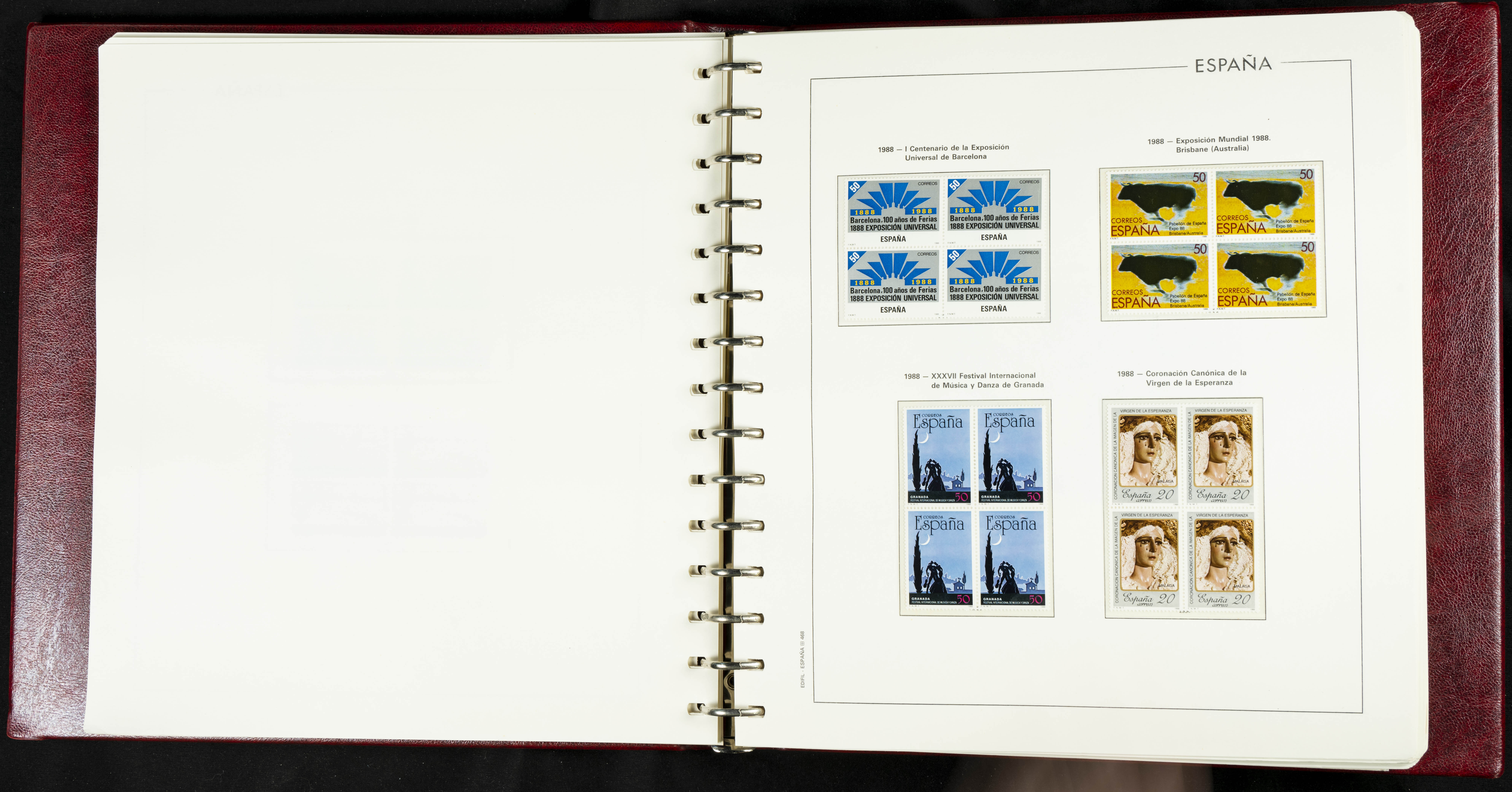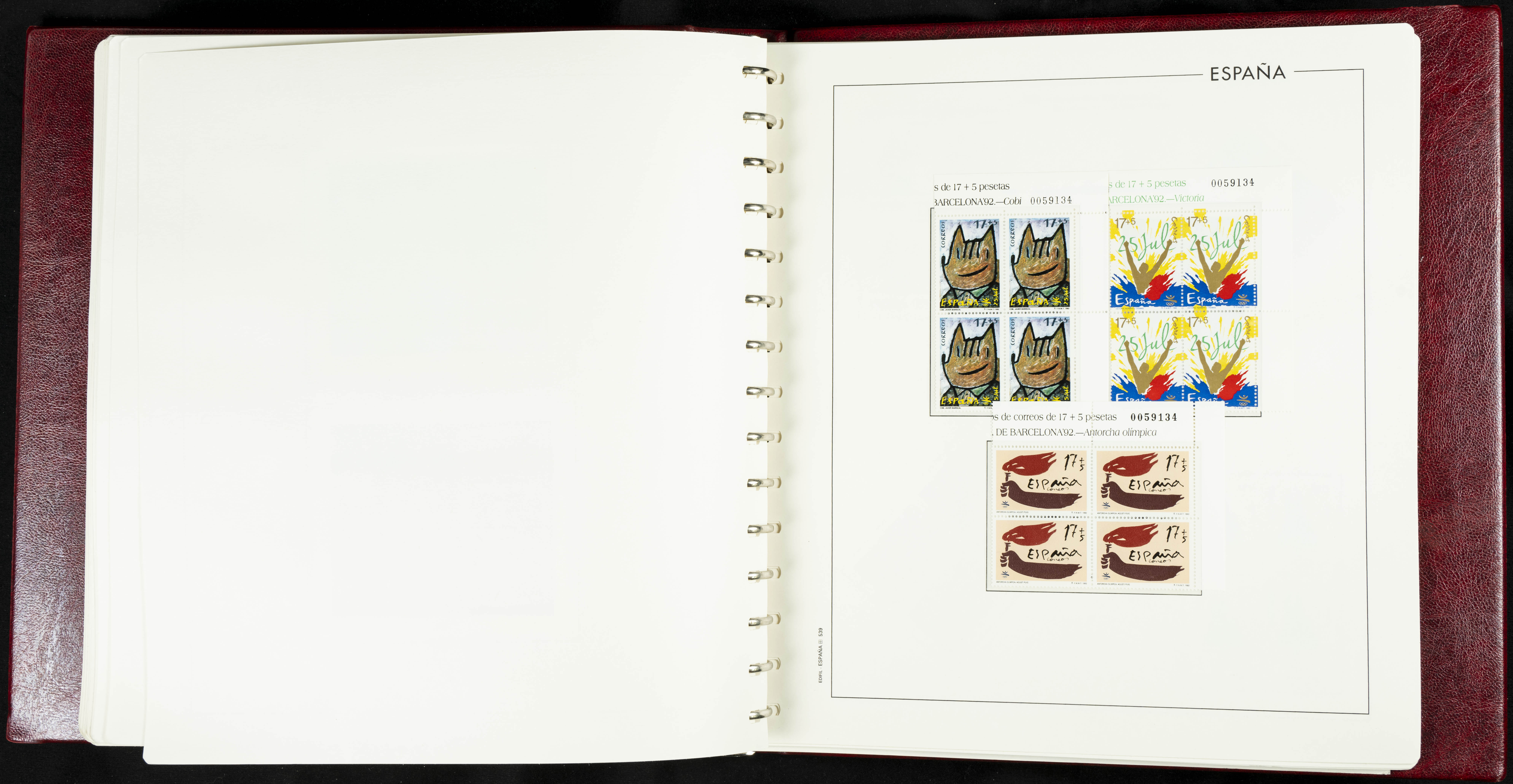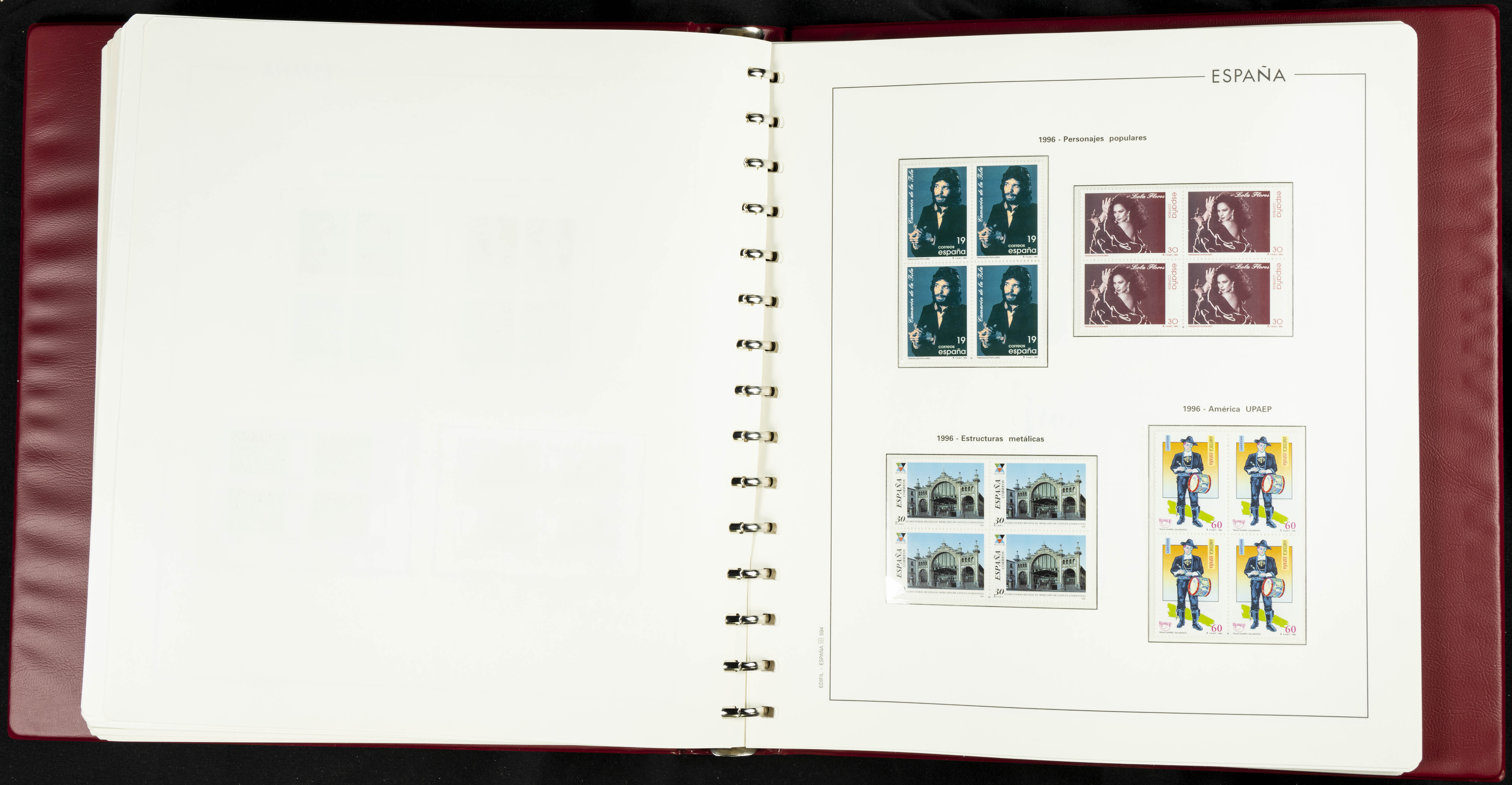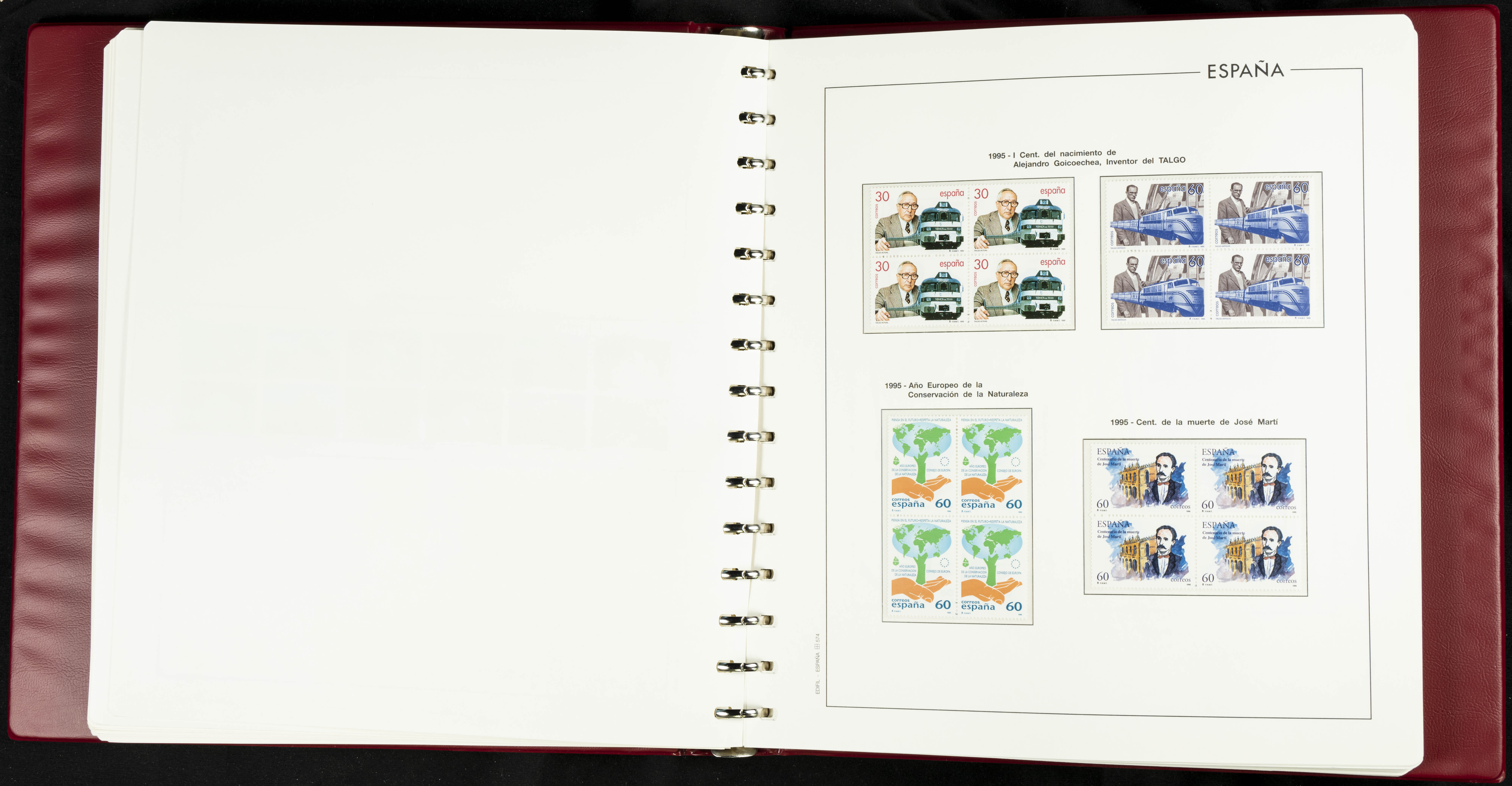 ★★(1976ca). Complete collection between 1976 and 1999, including the 2000 portion denominated exclusively in pesetas, in blocks of four (with a souvenir sheet), in mint condition (mounted in albums). HIGH CATALOGUE VALUE. TO BE EXAMINED.