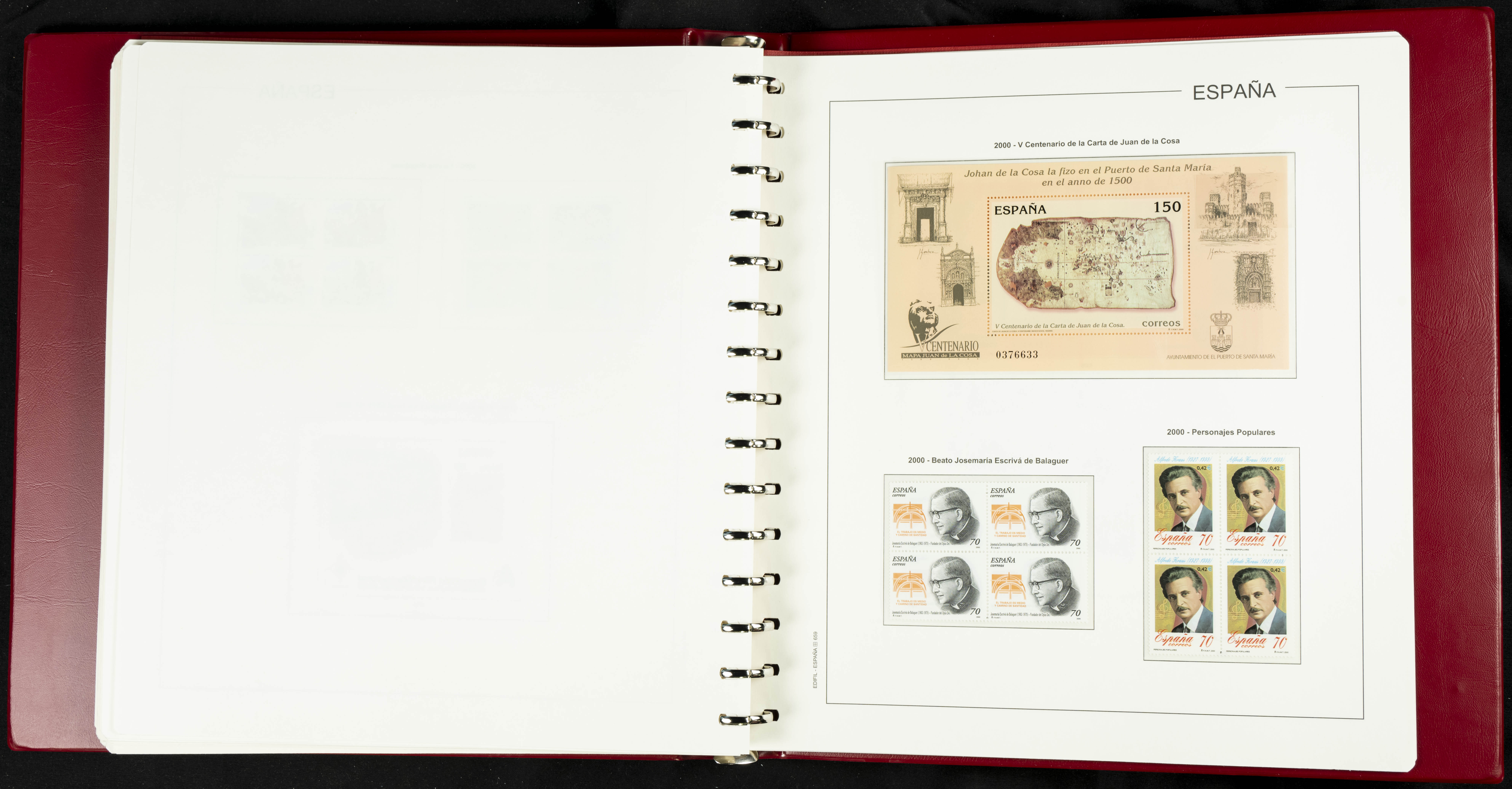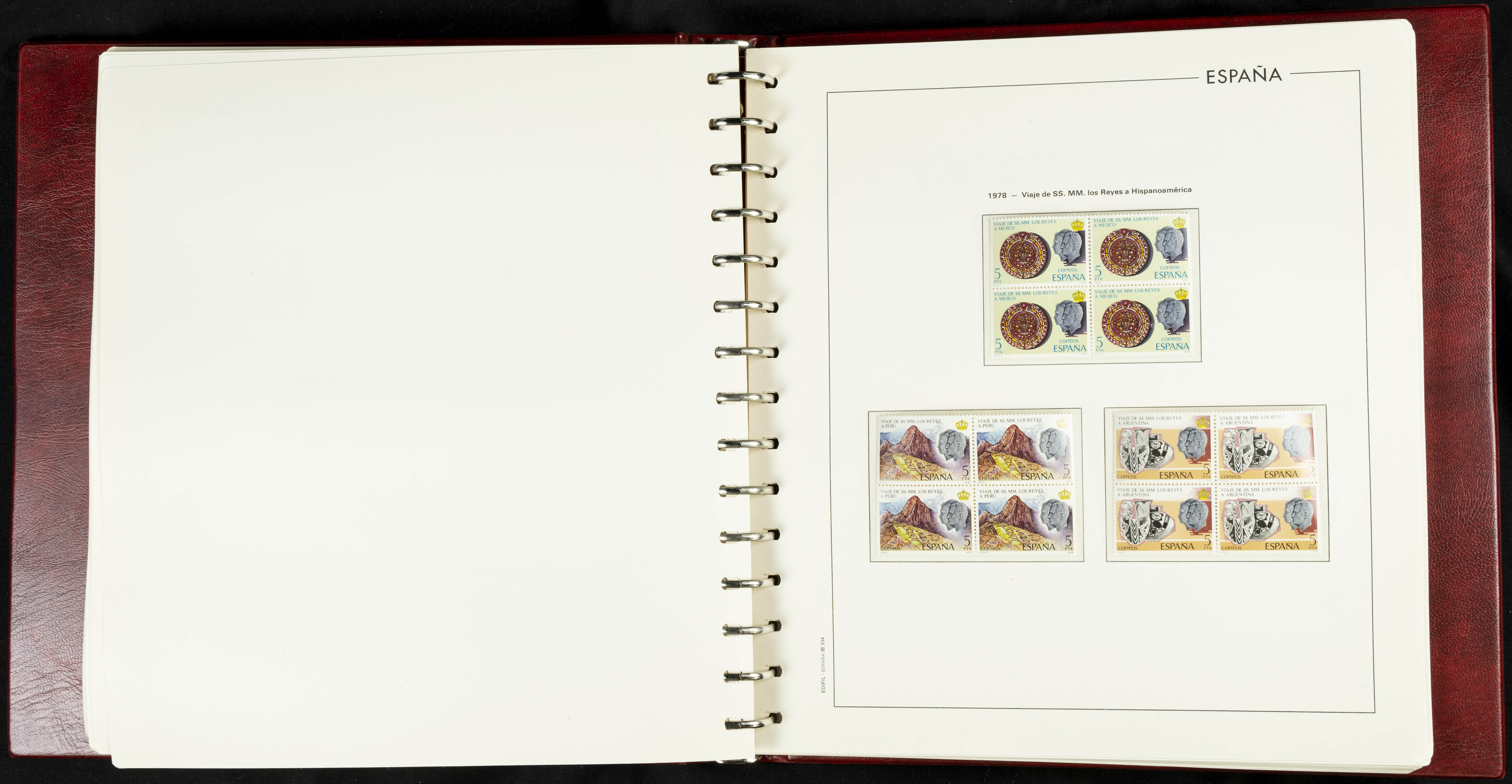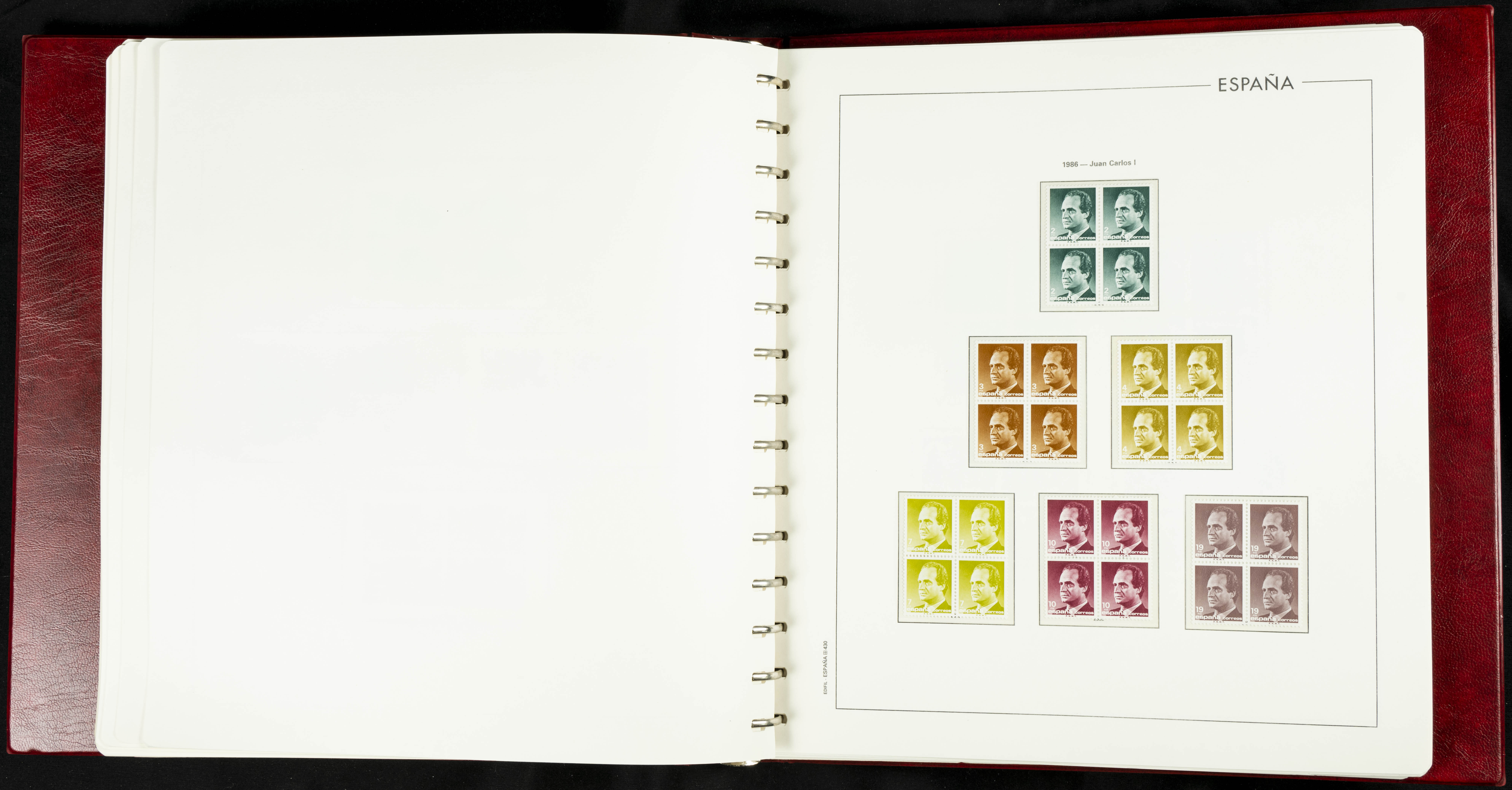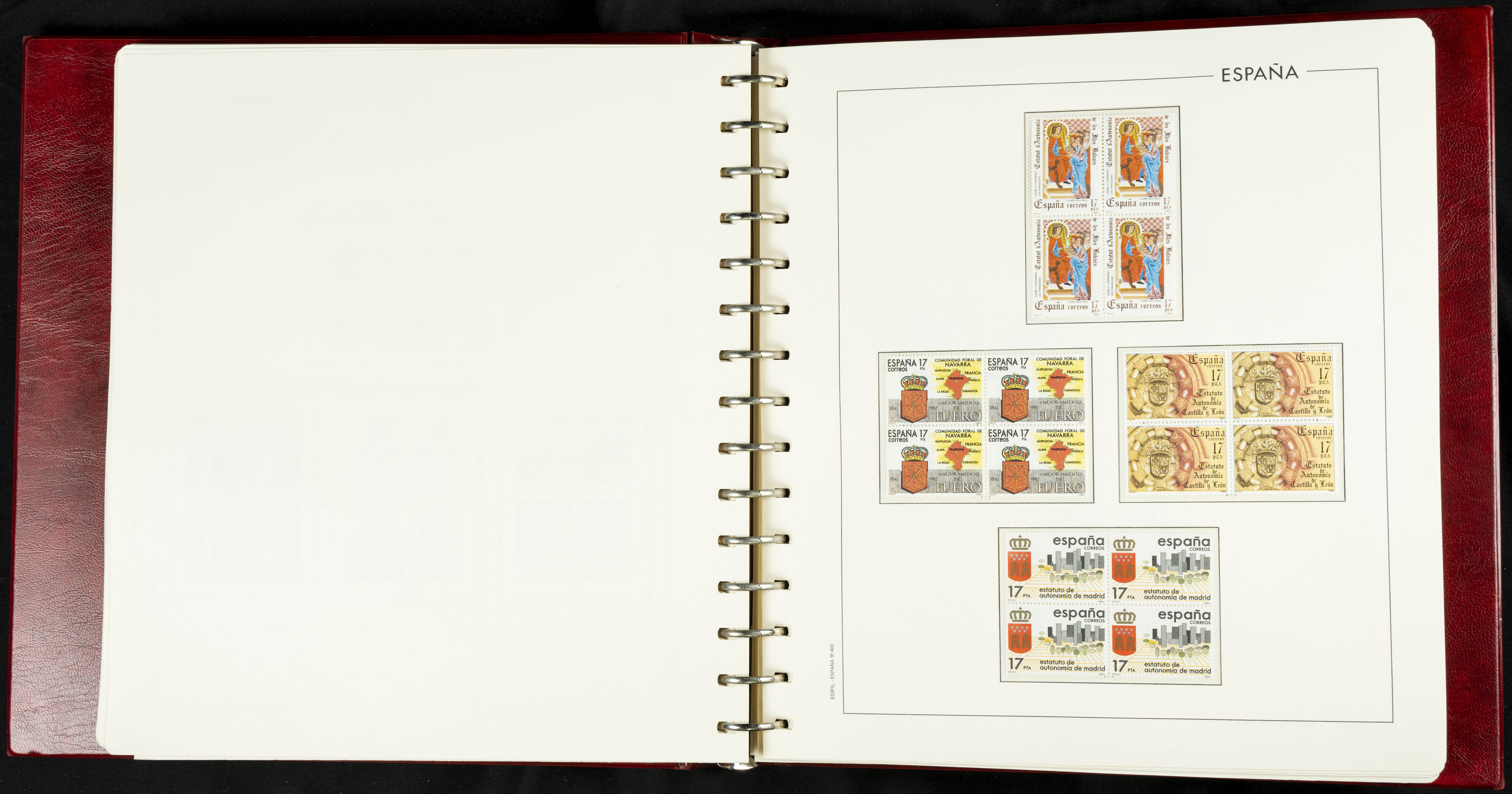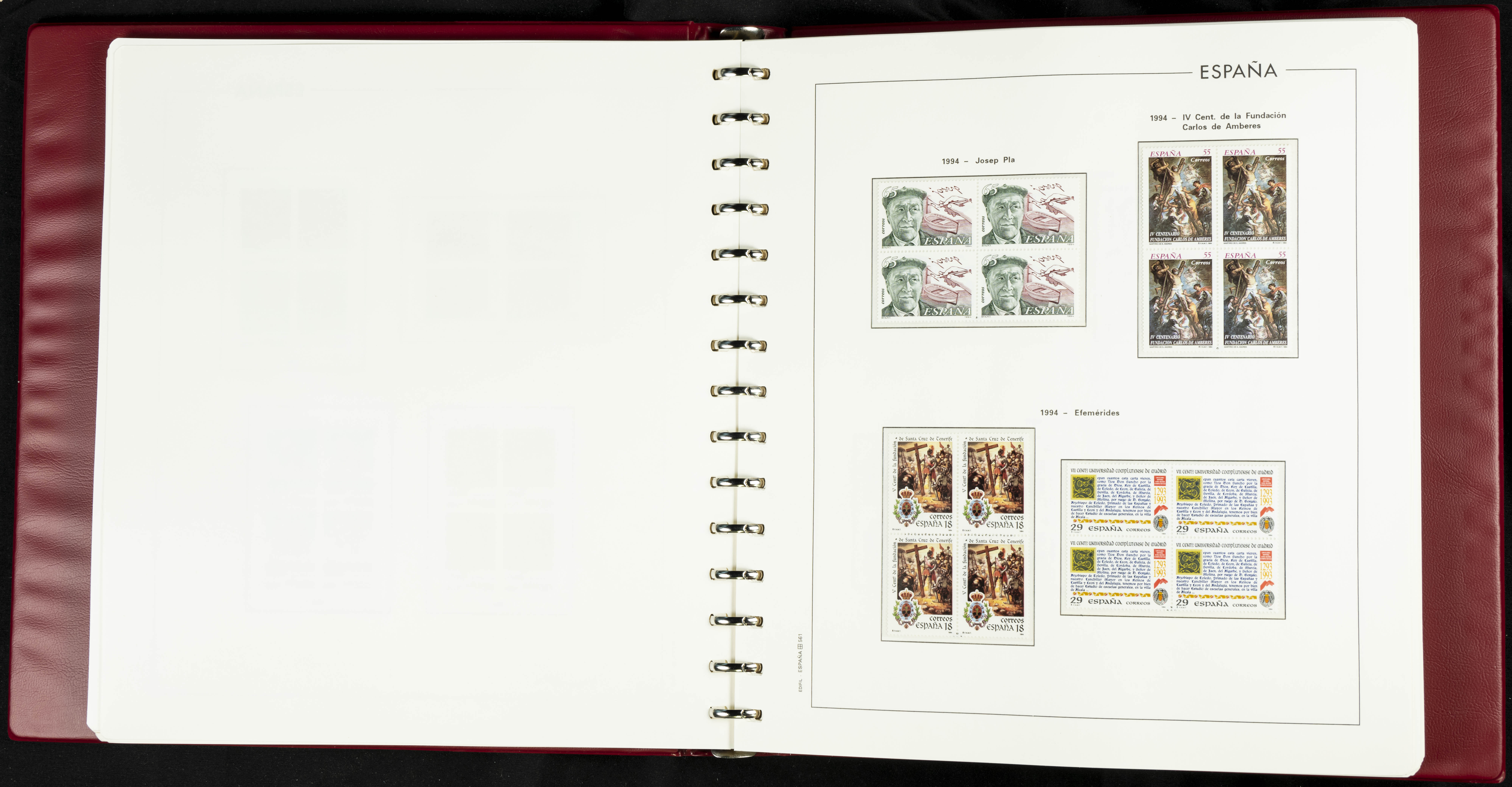 ★★(1976ca). Complete collection between 1976 and 1999, including the 2000 portion denominated exclusively in pesetas, in blocks of four (with a souvenir sheet), in mint condition (mounted in albums). HIGH CATALOGUE VALUE. TO BE EXAMINED.
