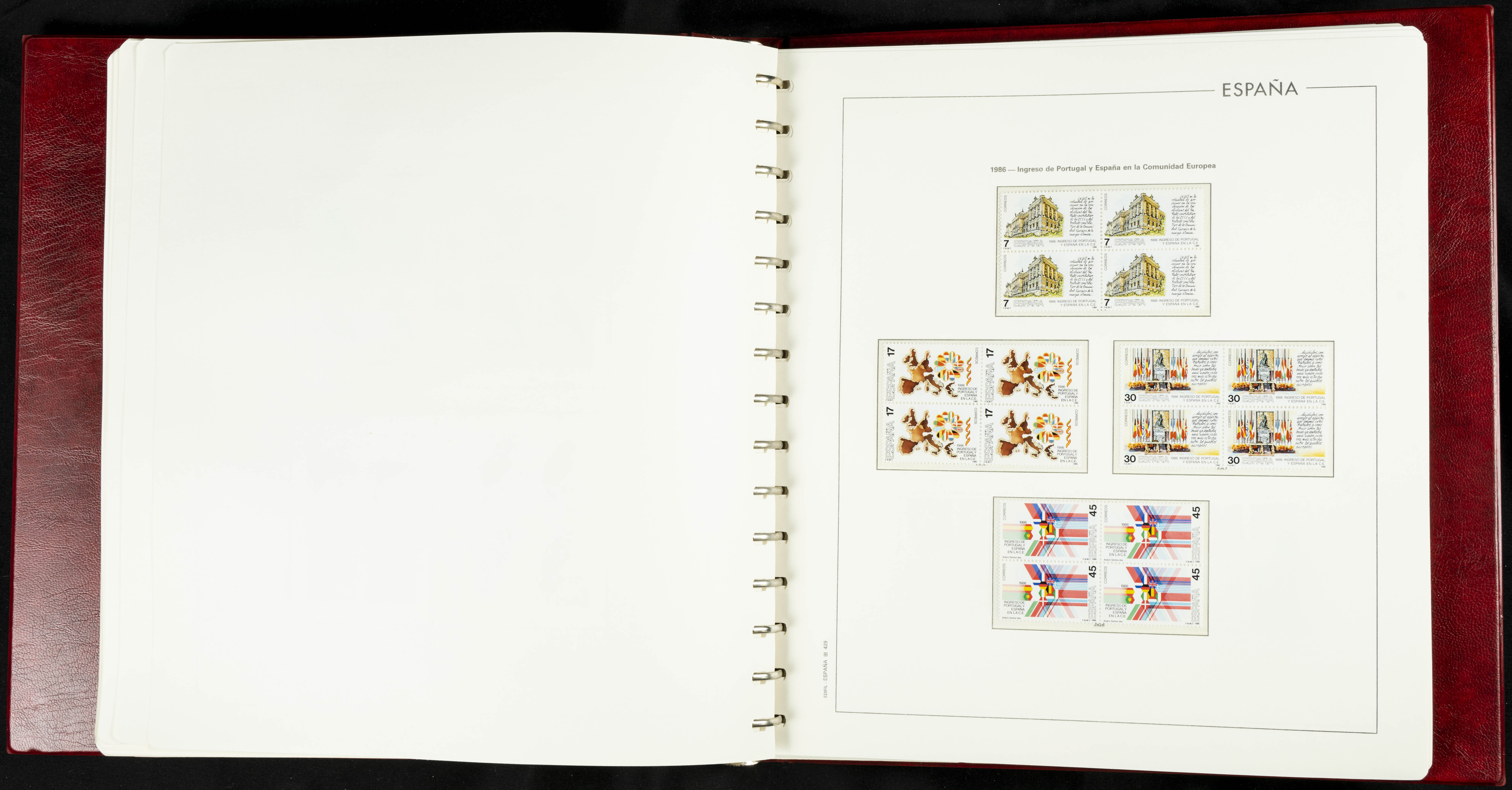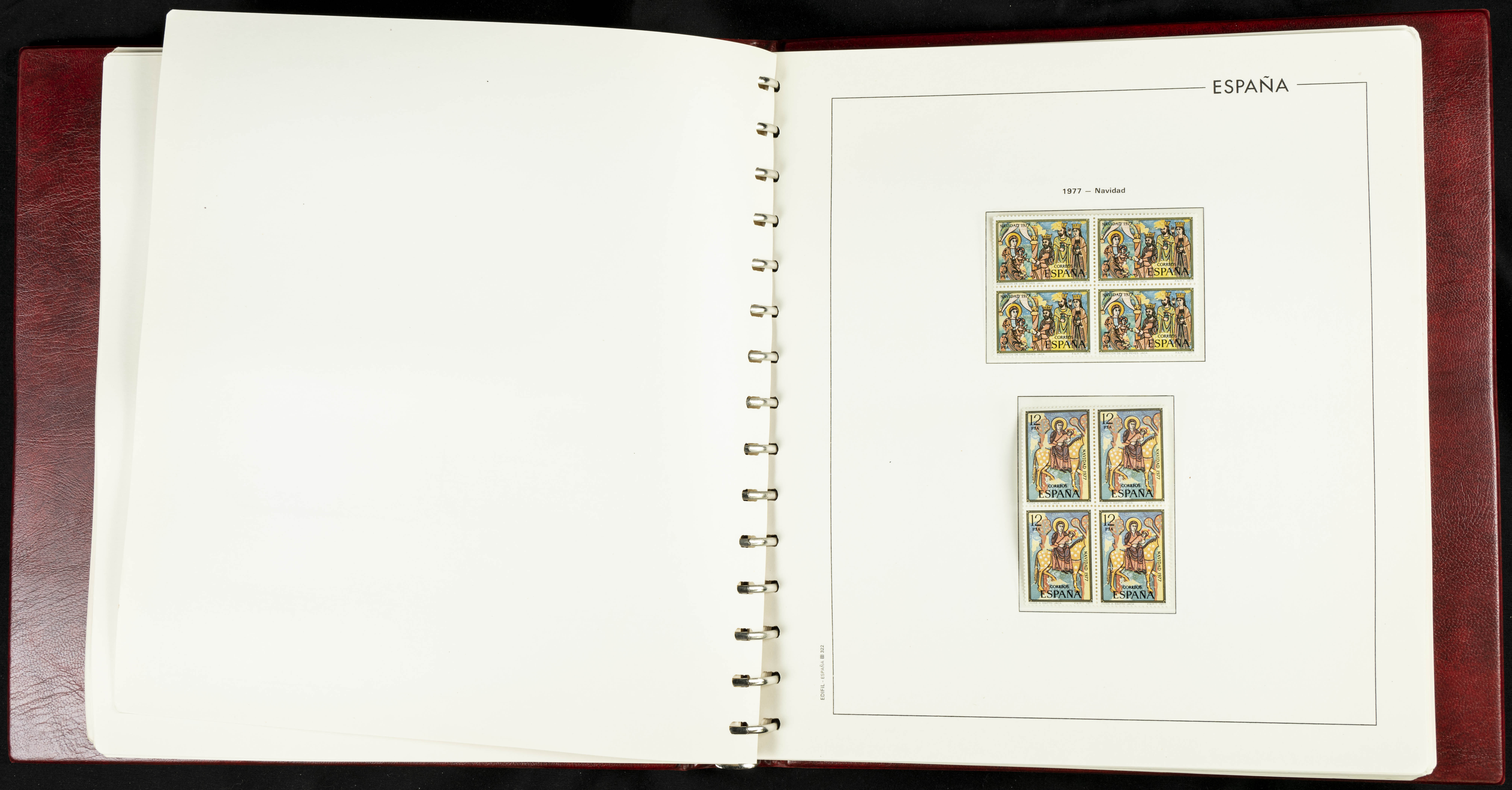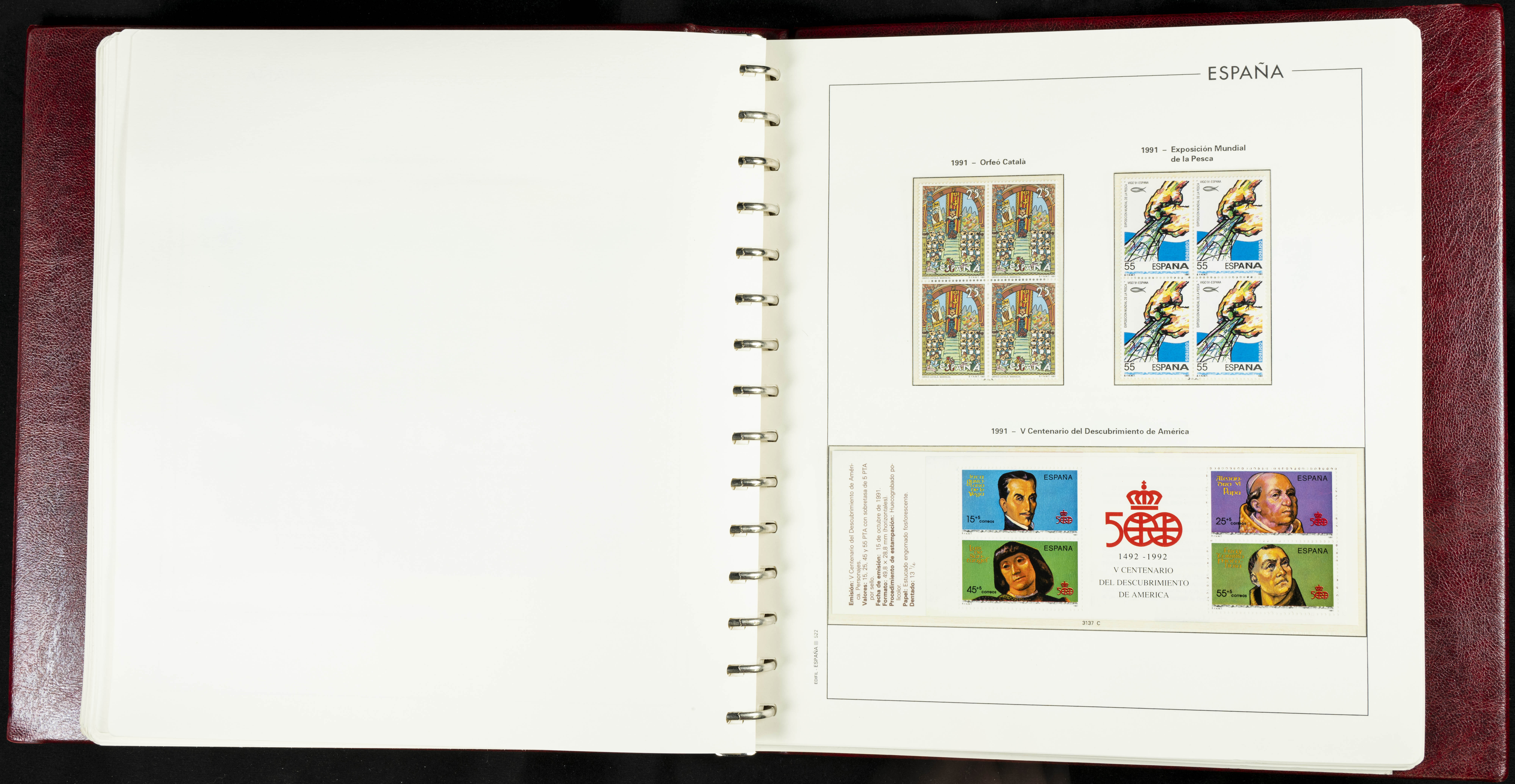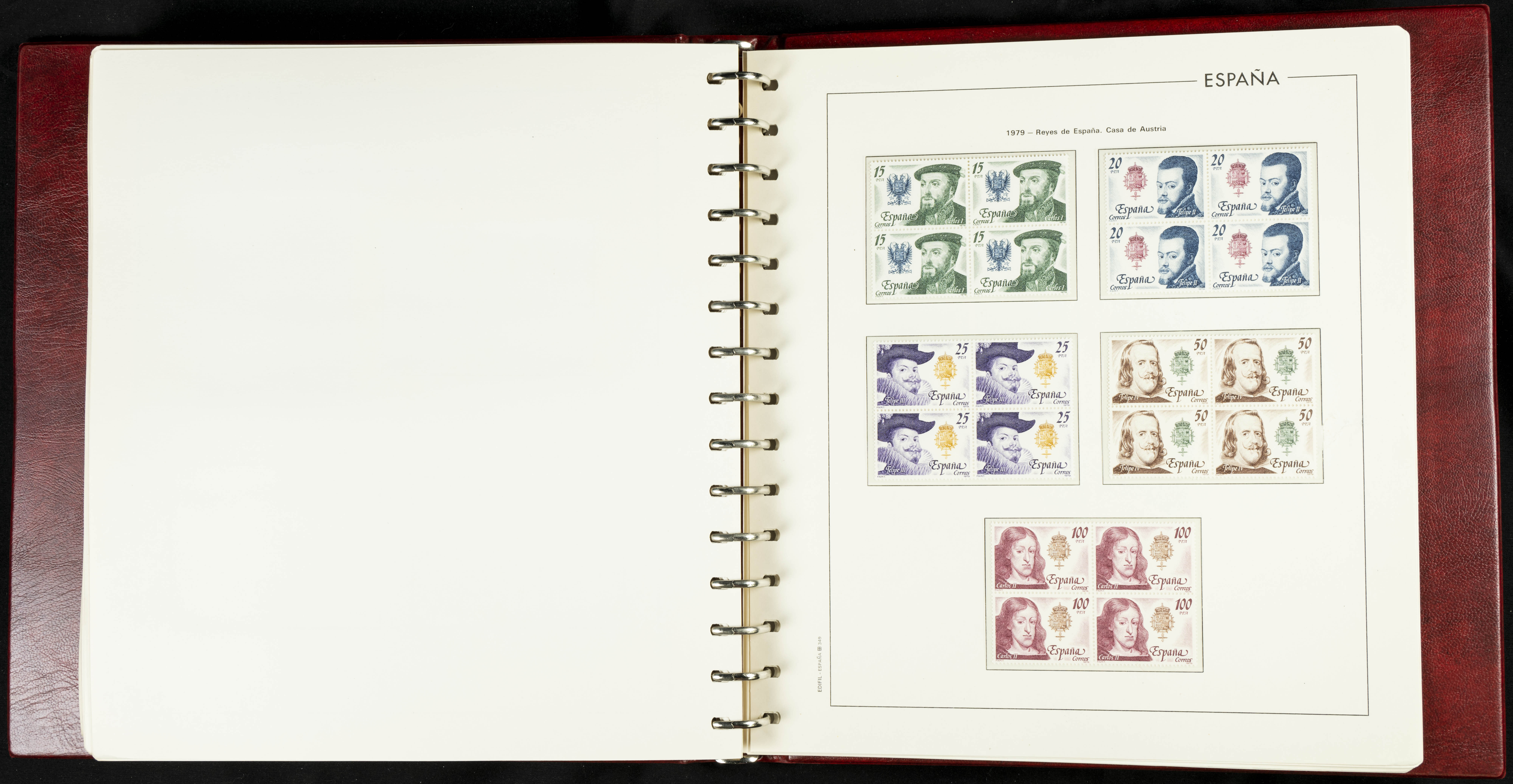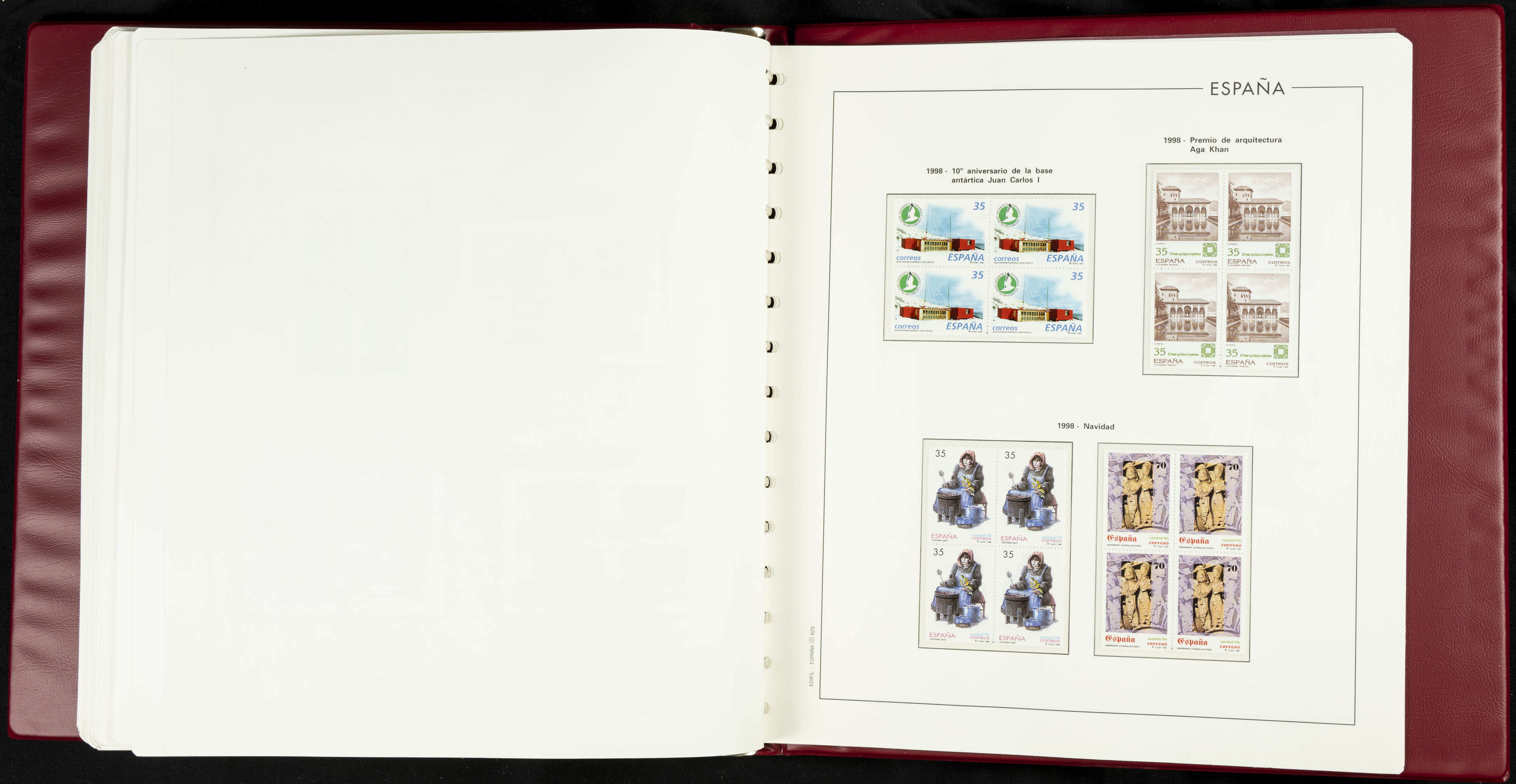 ★★(1976ca). Complete collection between 1976 and 1999, including the 2000 portion denominated exclusively in pesetas, in blocks of four (with a souvenir sheet), in mint condition (mounted in albums). HIGH CATALOGUE VALUE. TO BE EXAMINED.
