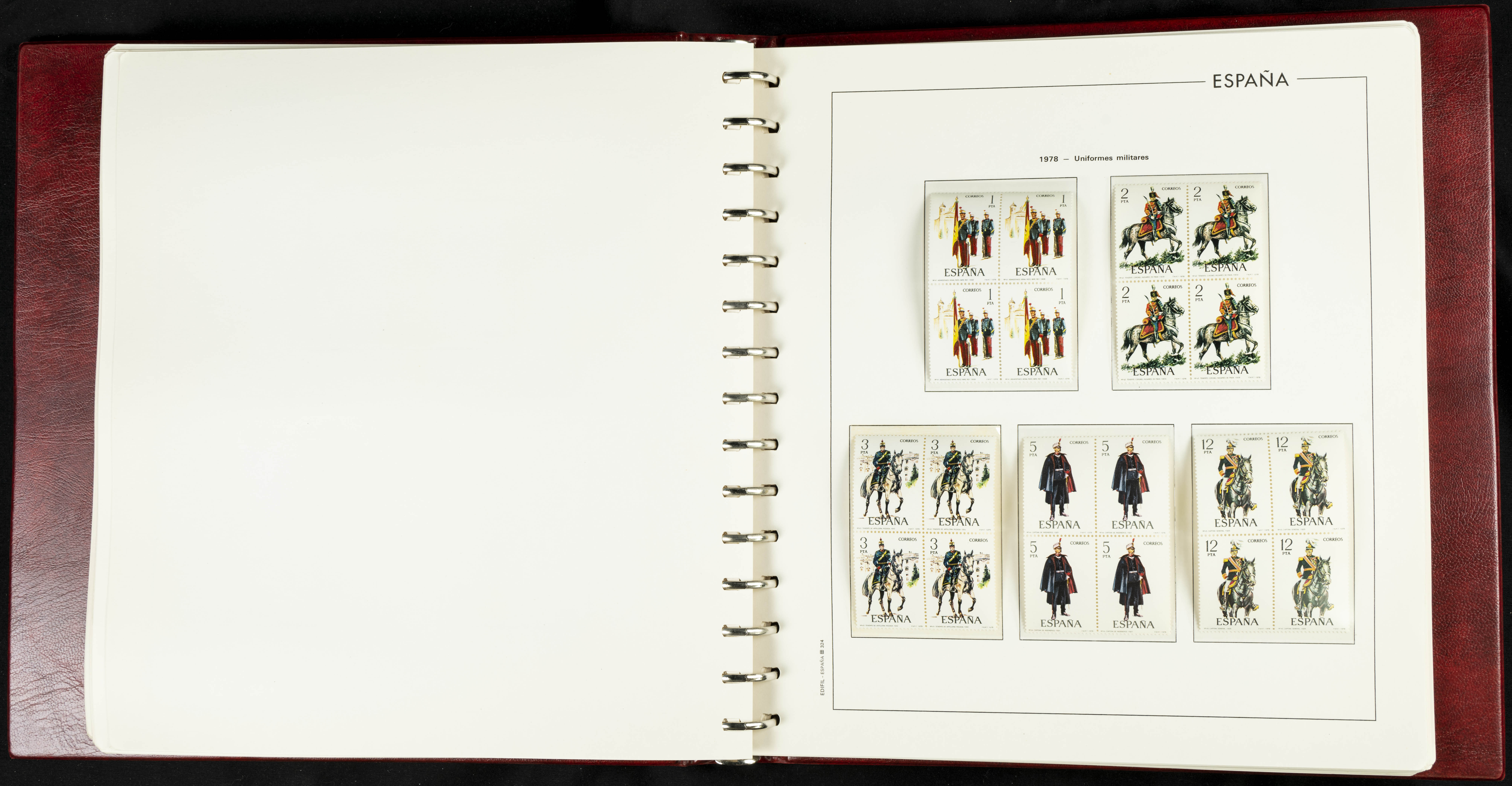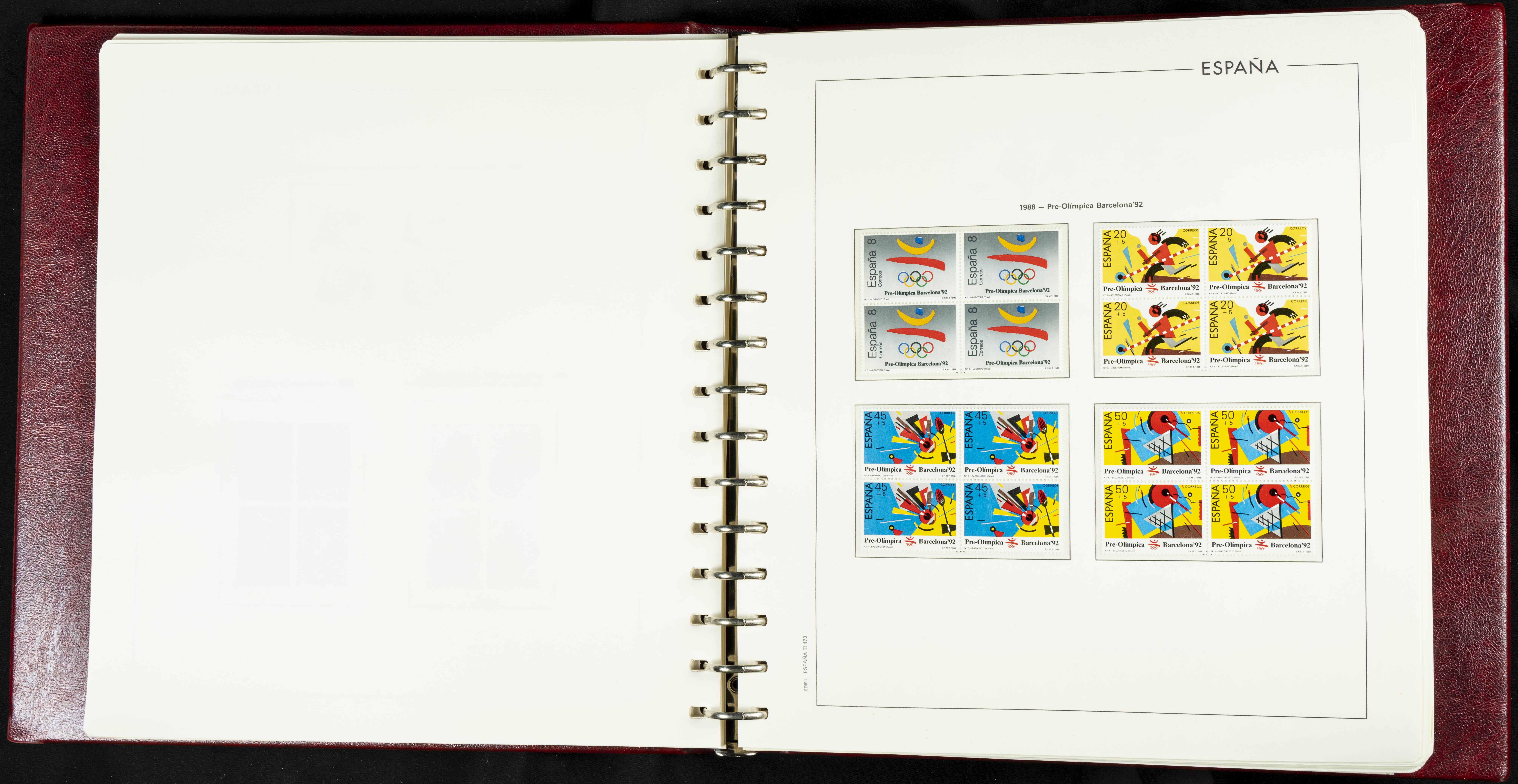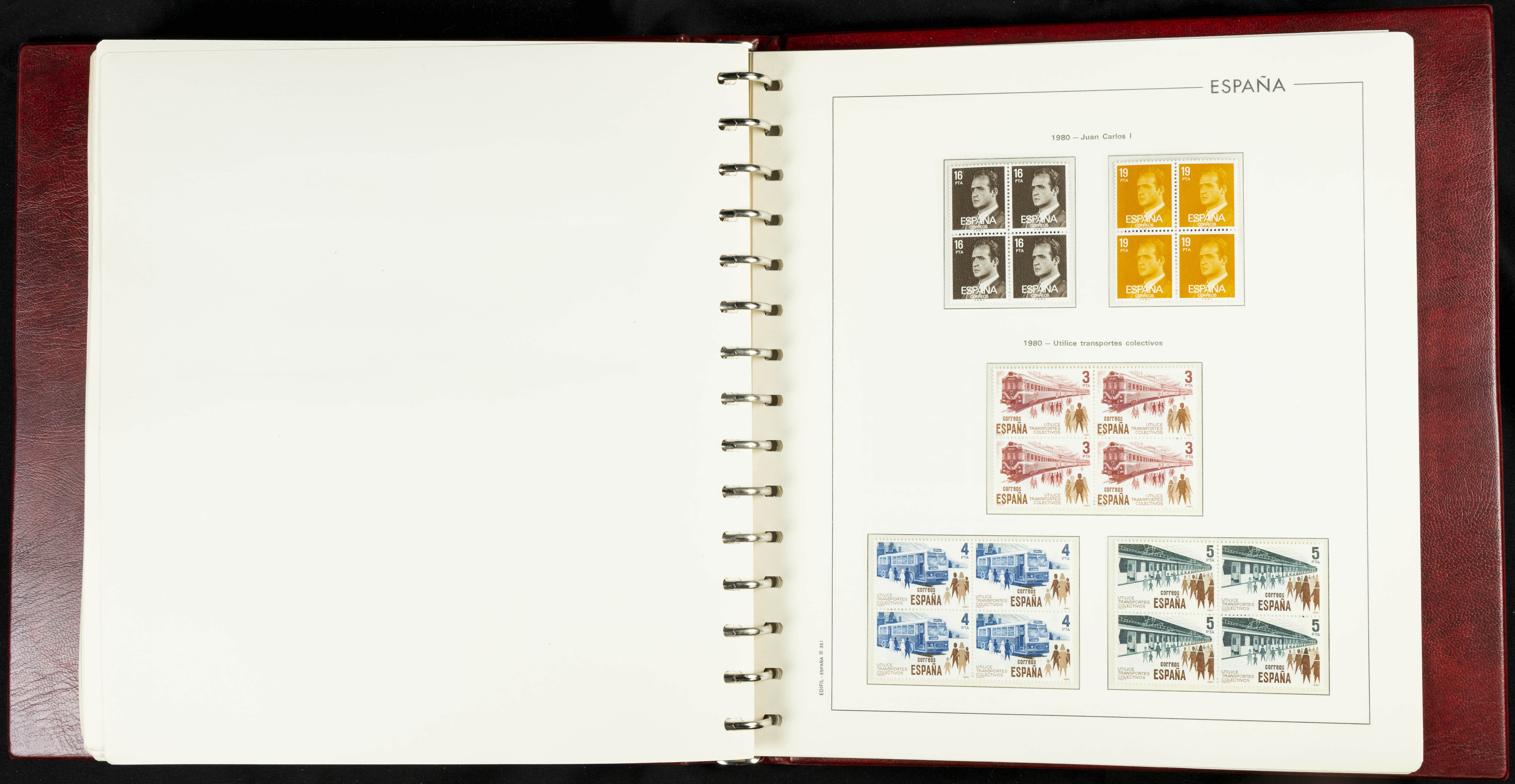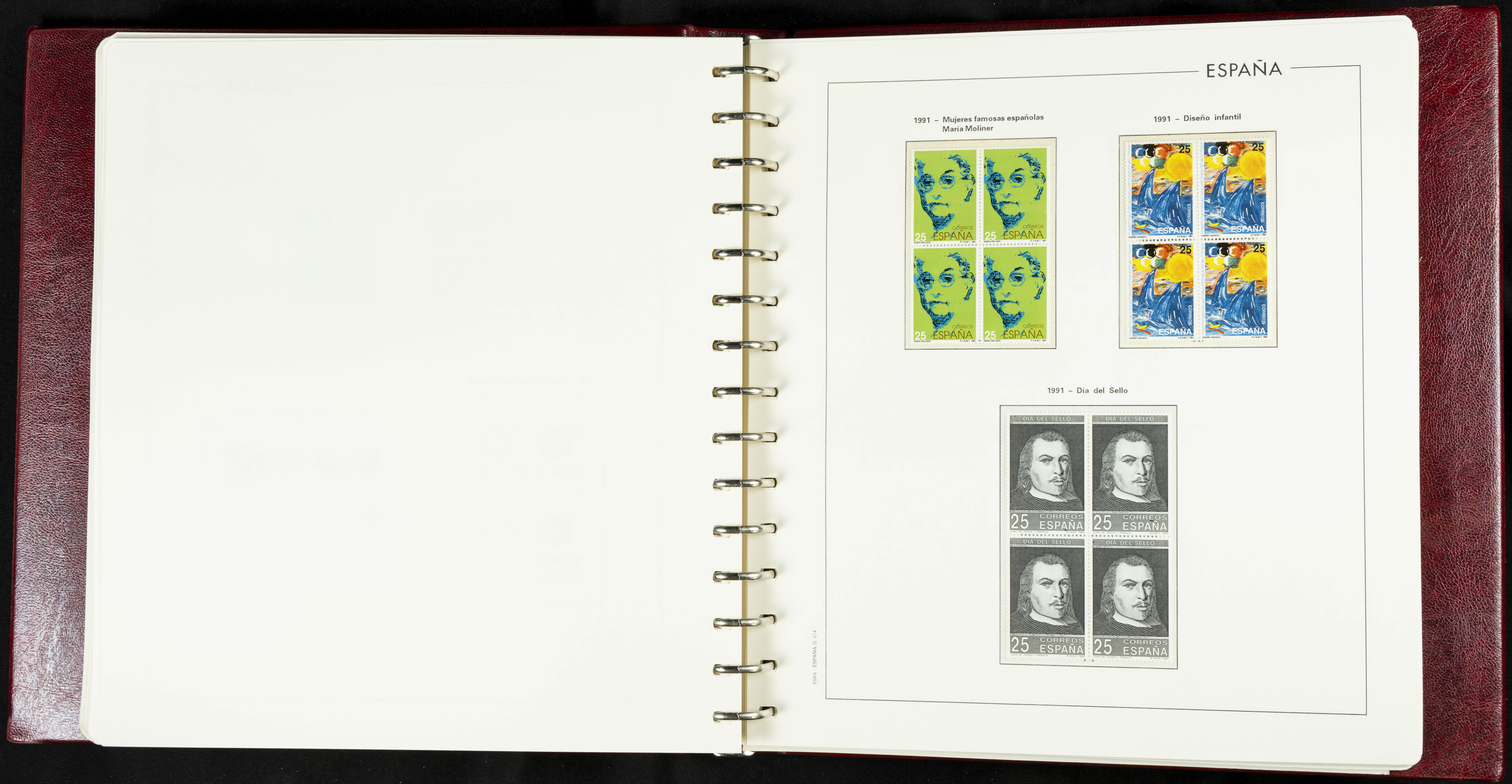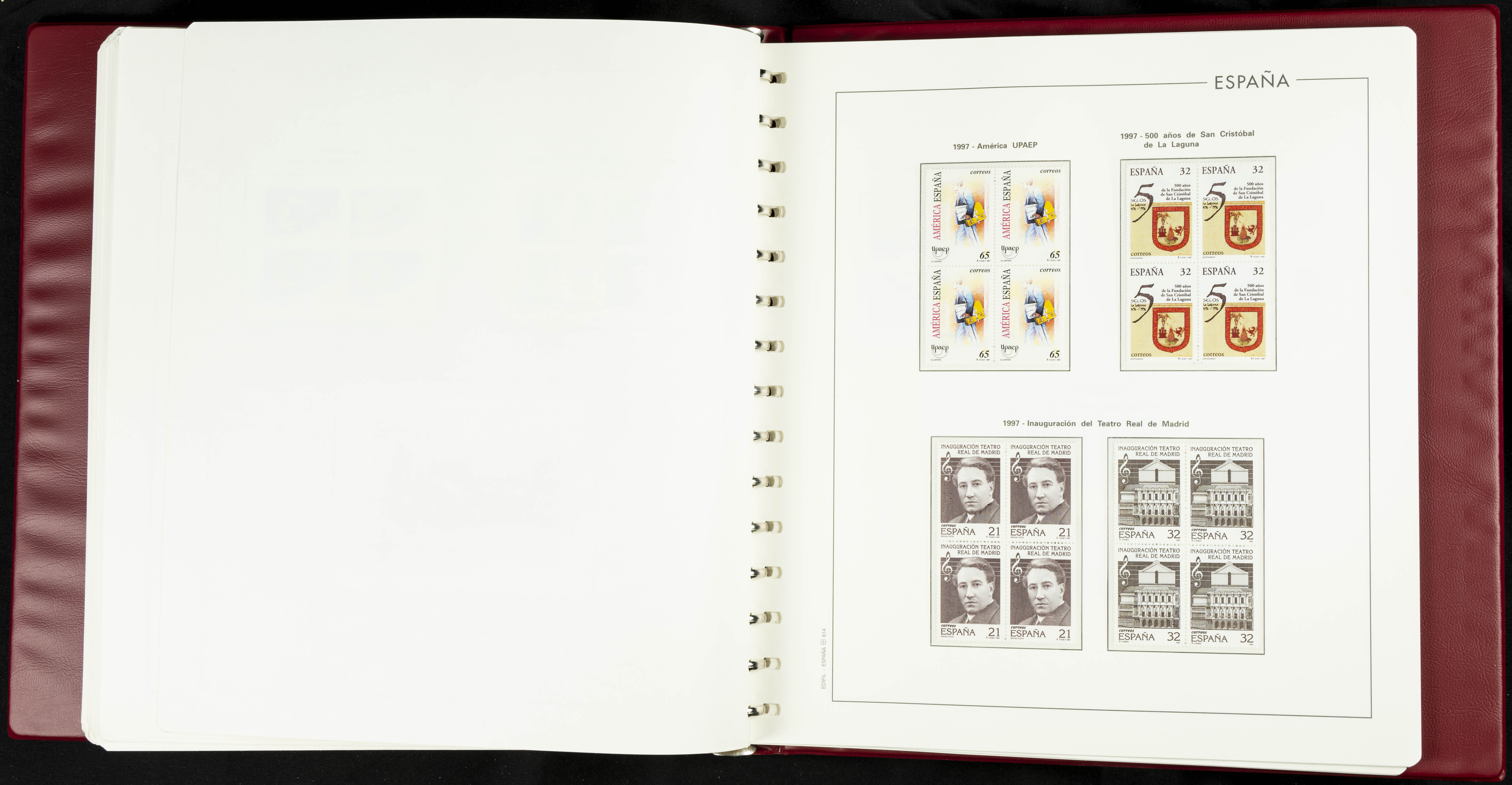 ★★(1976ca). Complete collection between 1976 and 1999, including the 2000 portion denominated exclusively in pesetas, in blocks of four (with a souvenir sheet), in mint condition (mounted in albums). HIGH CATALOGUE VALUE. TO BE EXAMINED.