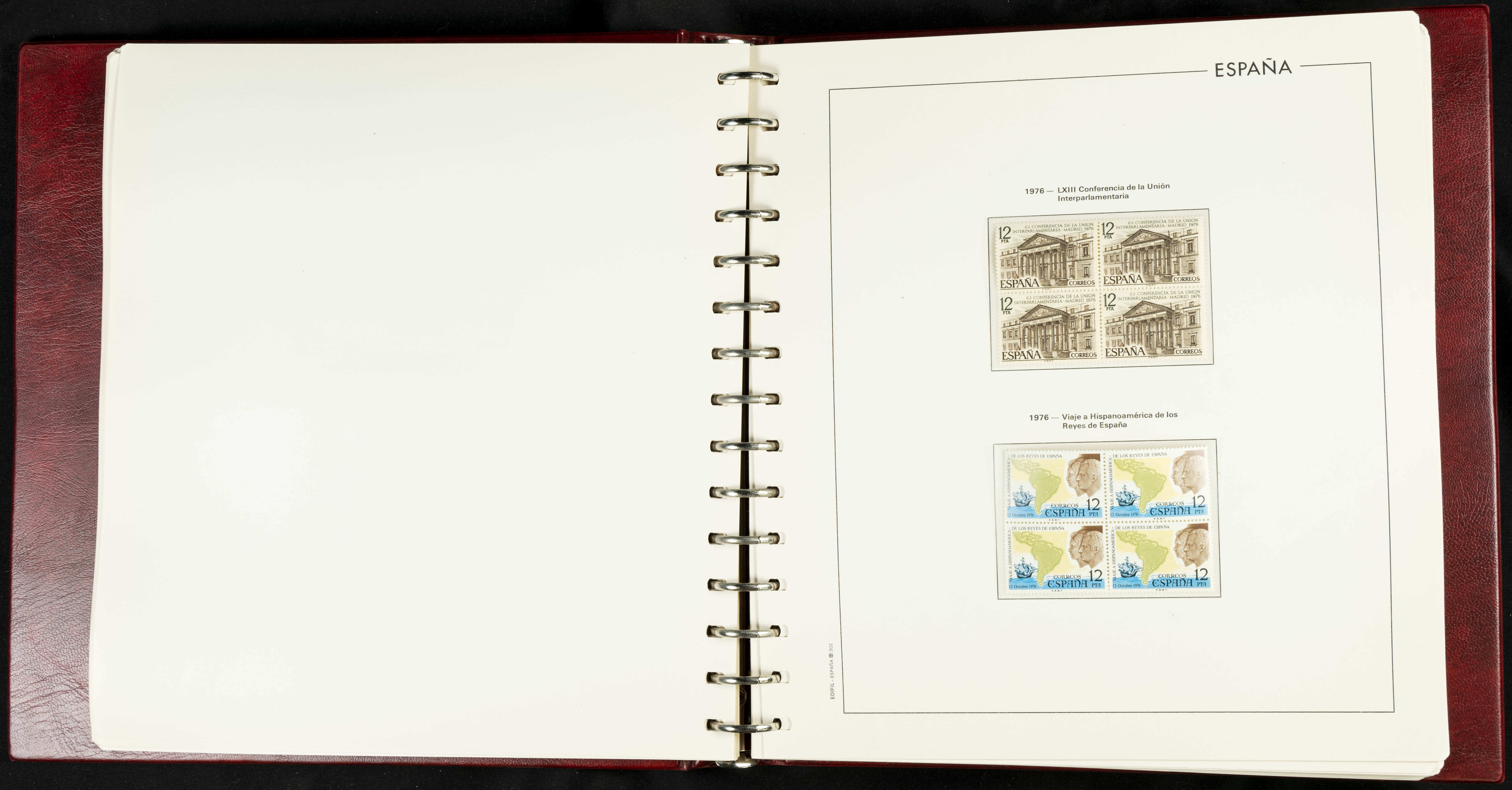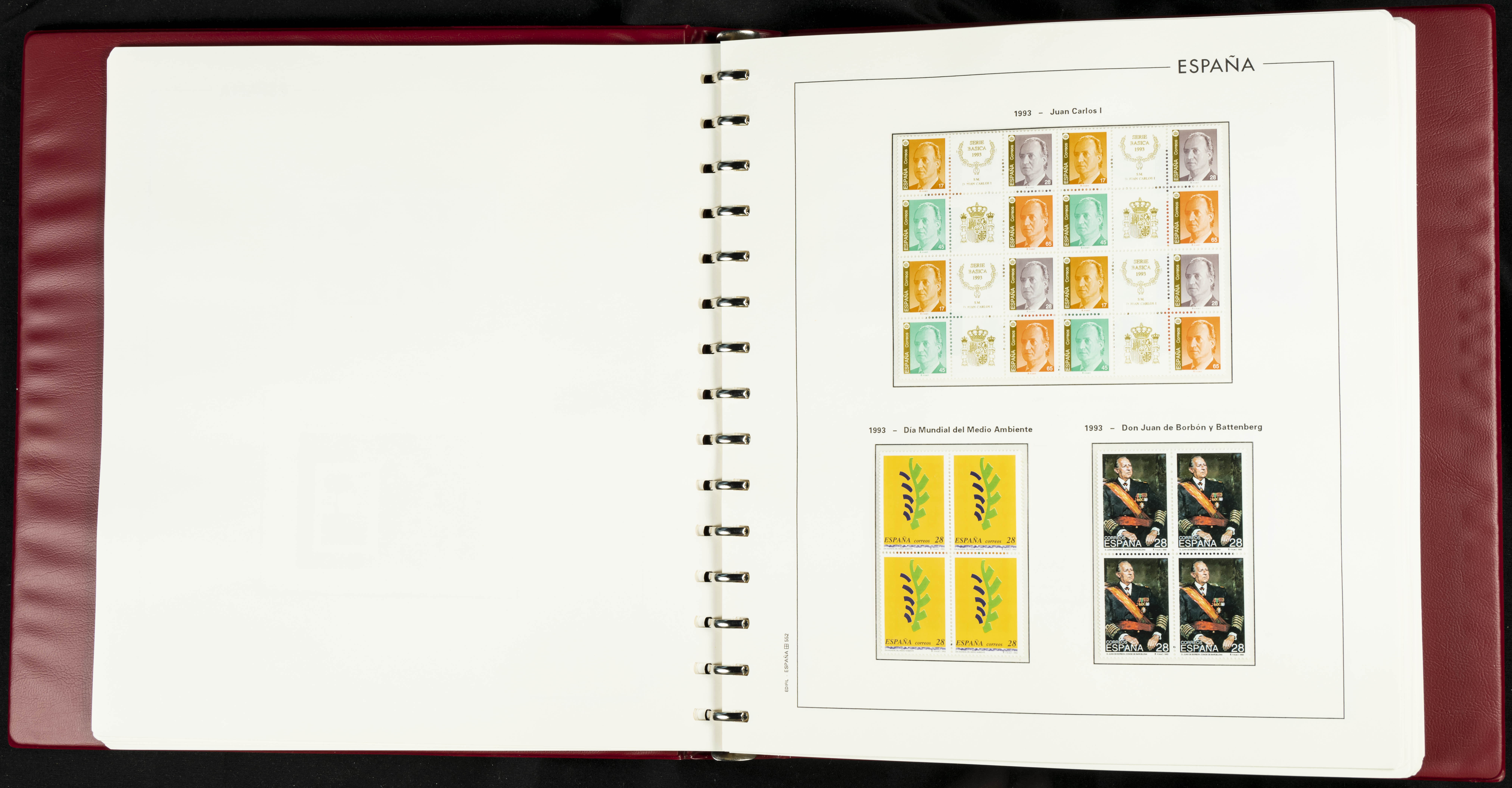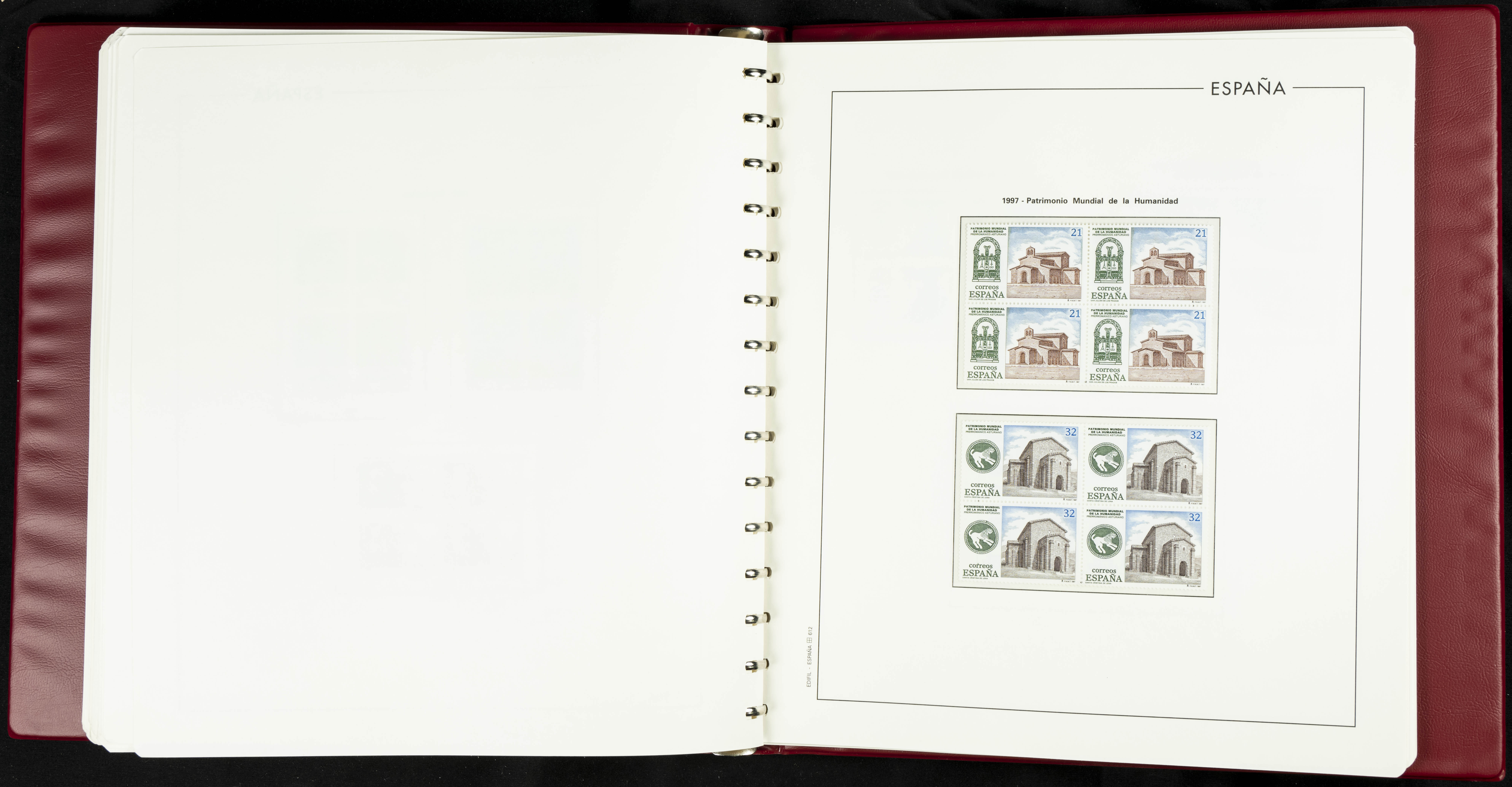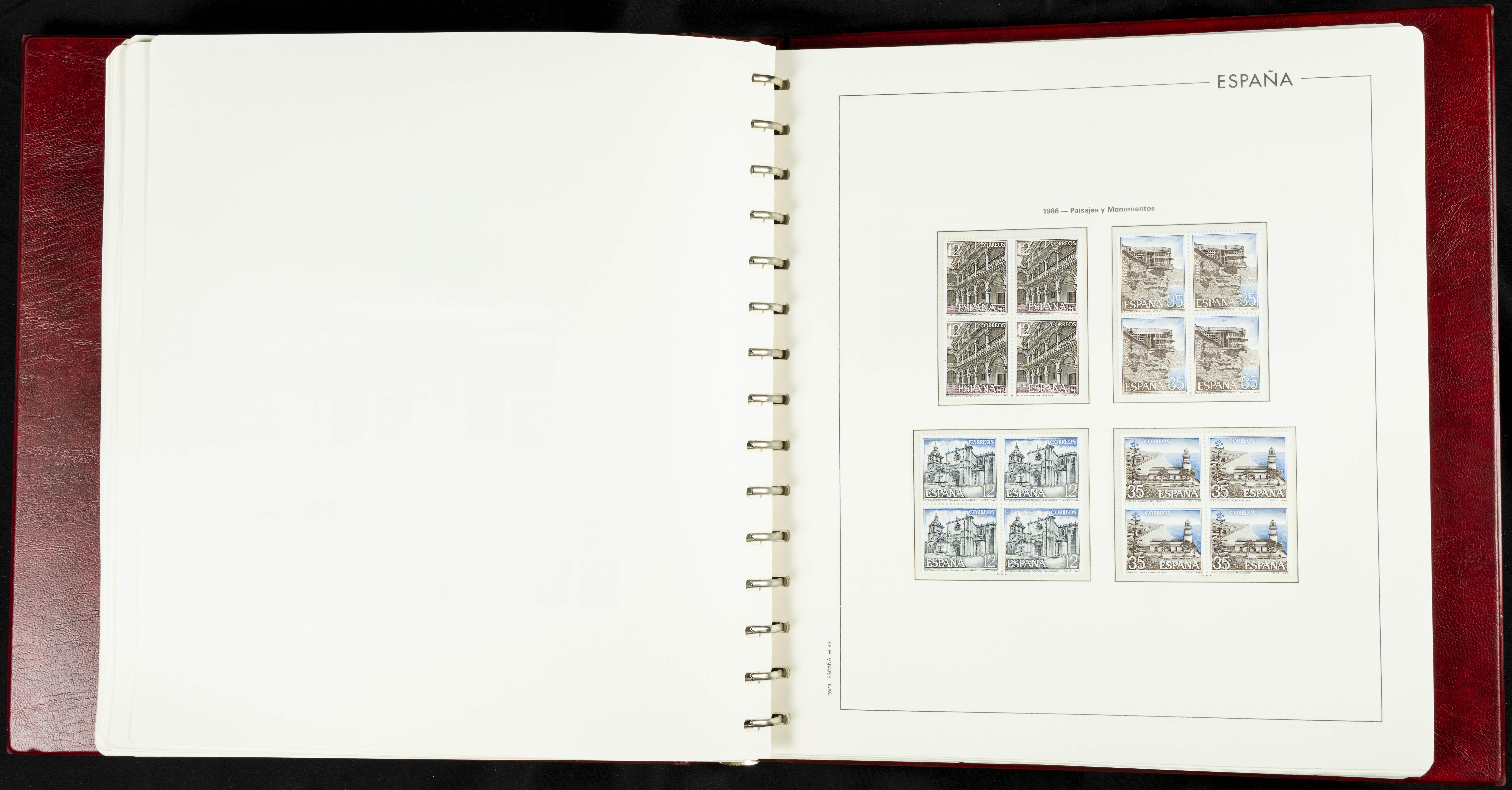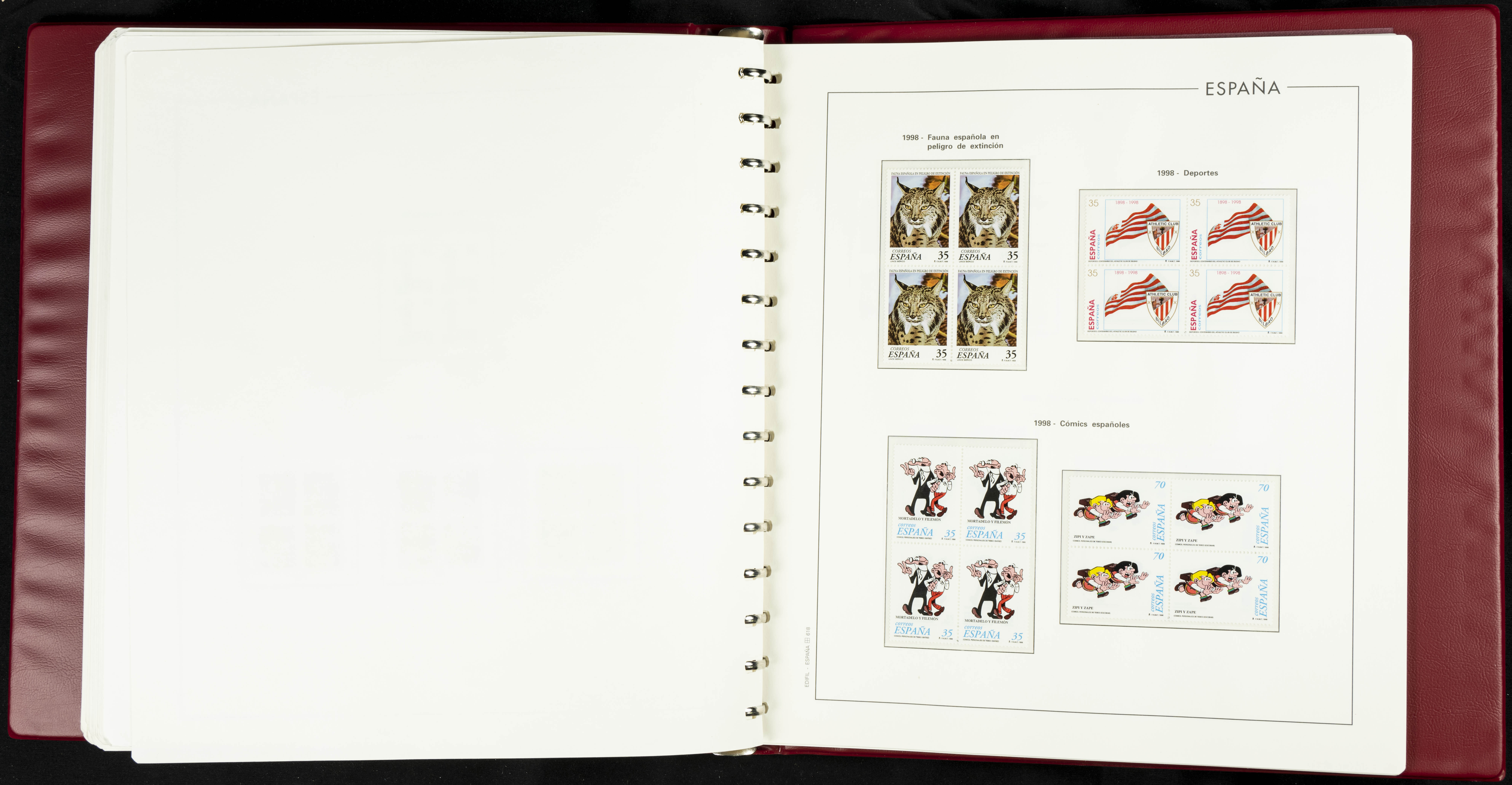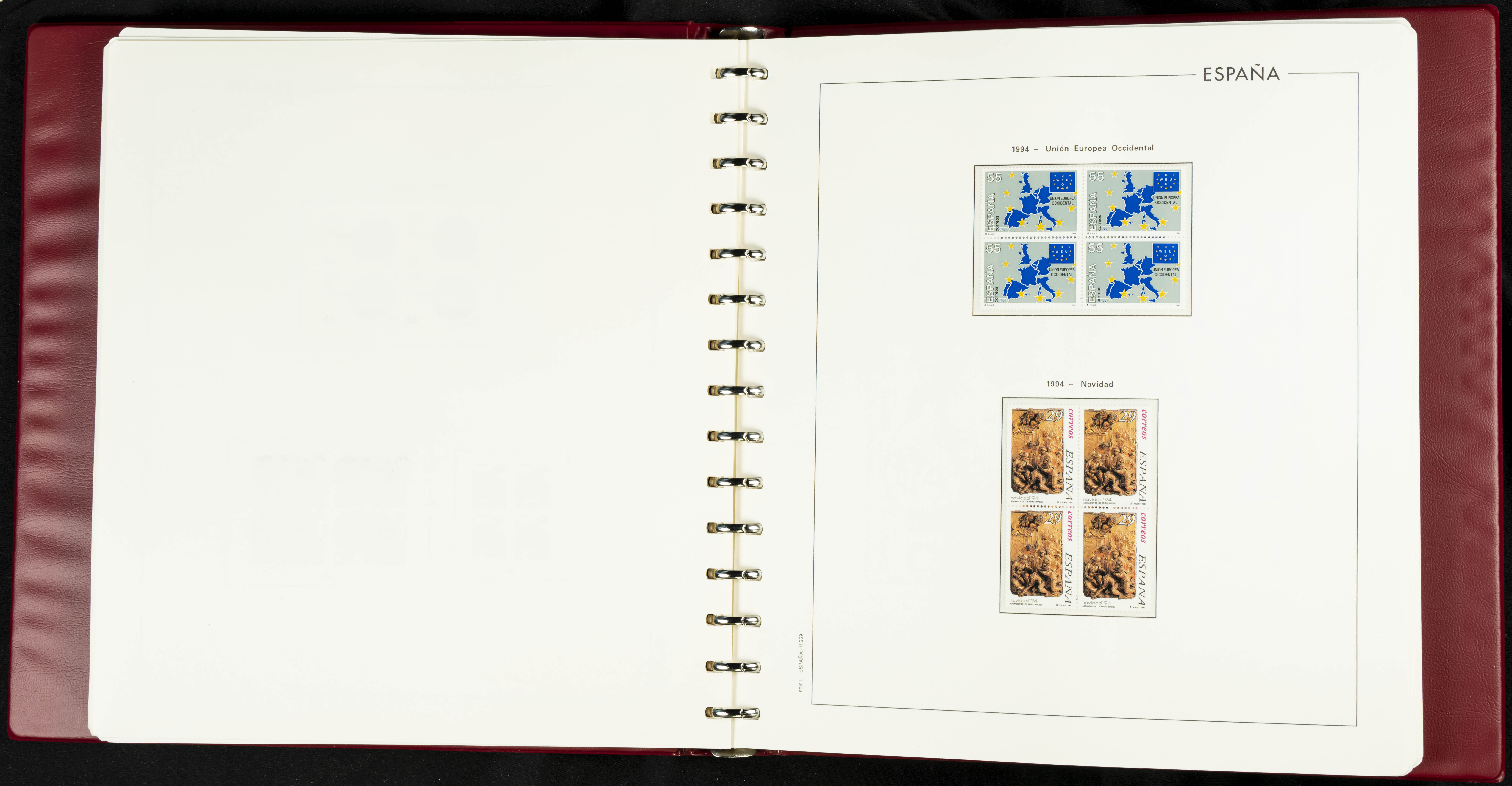 ★★(1976ca). Complete collection between 1976 and 1999, including the 2000 portion denominated exclusively in pesetas, in blocks of four (with a souvenir sheet), in mint condition (mounted in albums). HIGH CATALOGUE VALUE. TO BE EXAMINED.