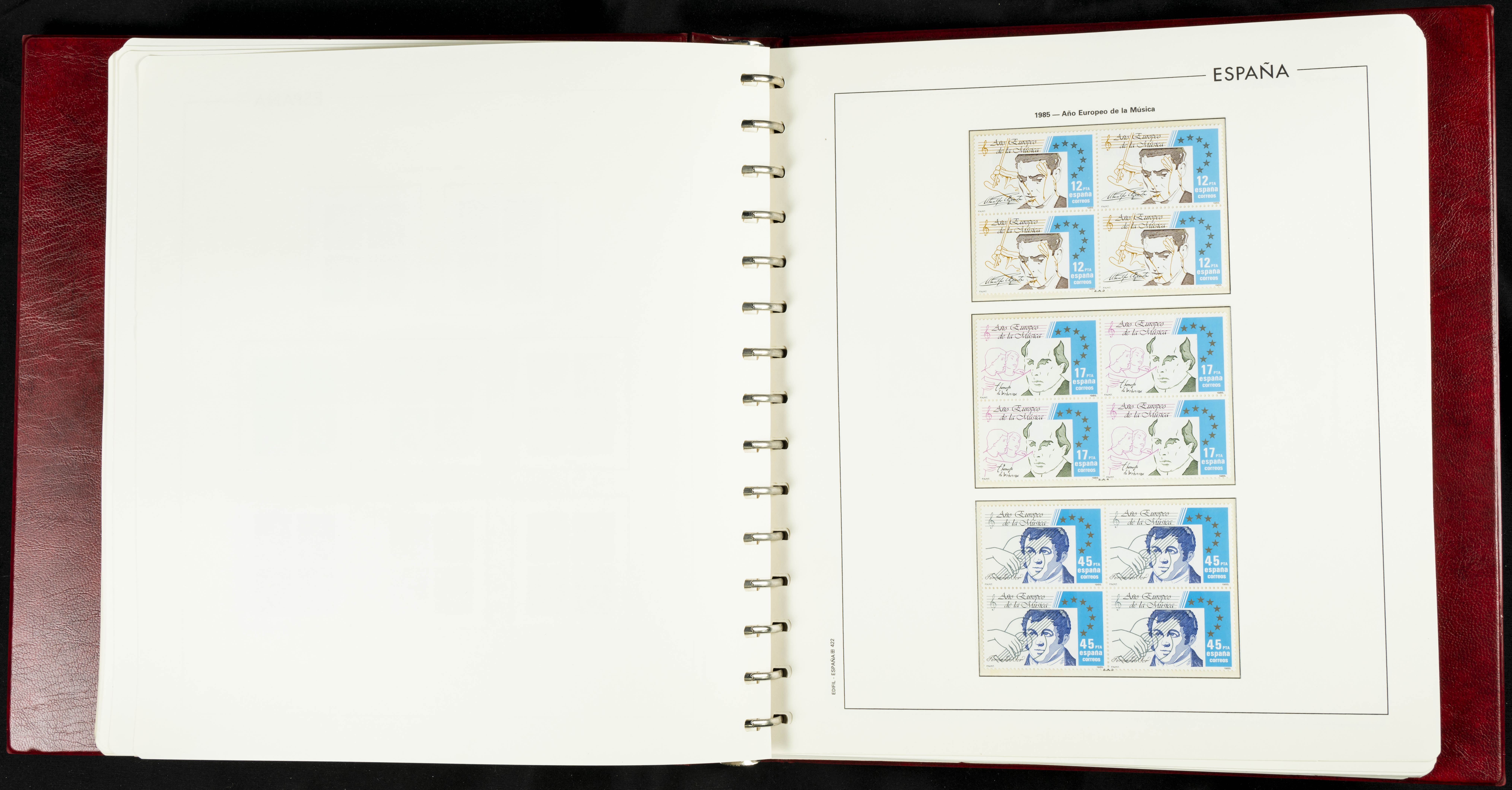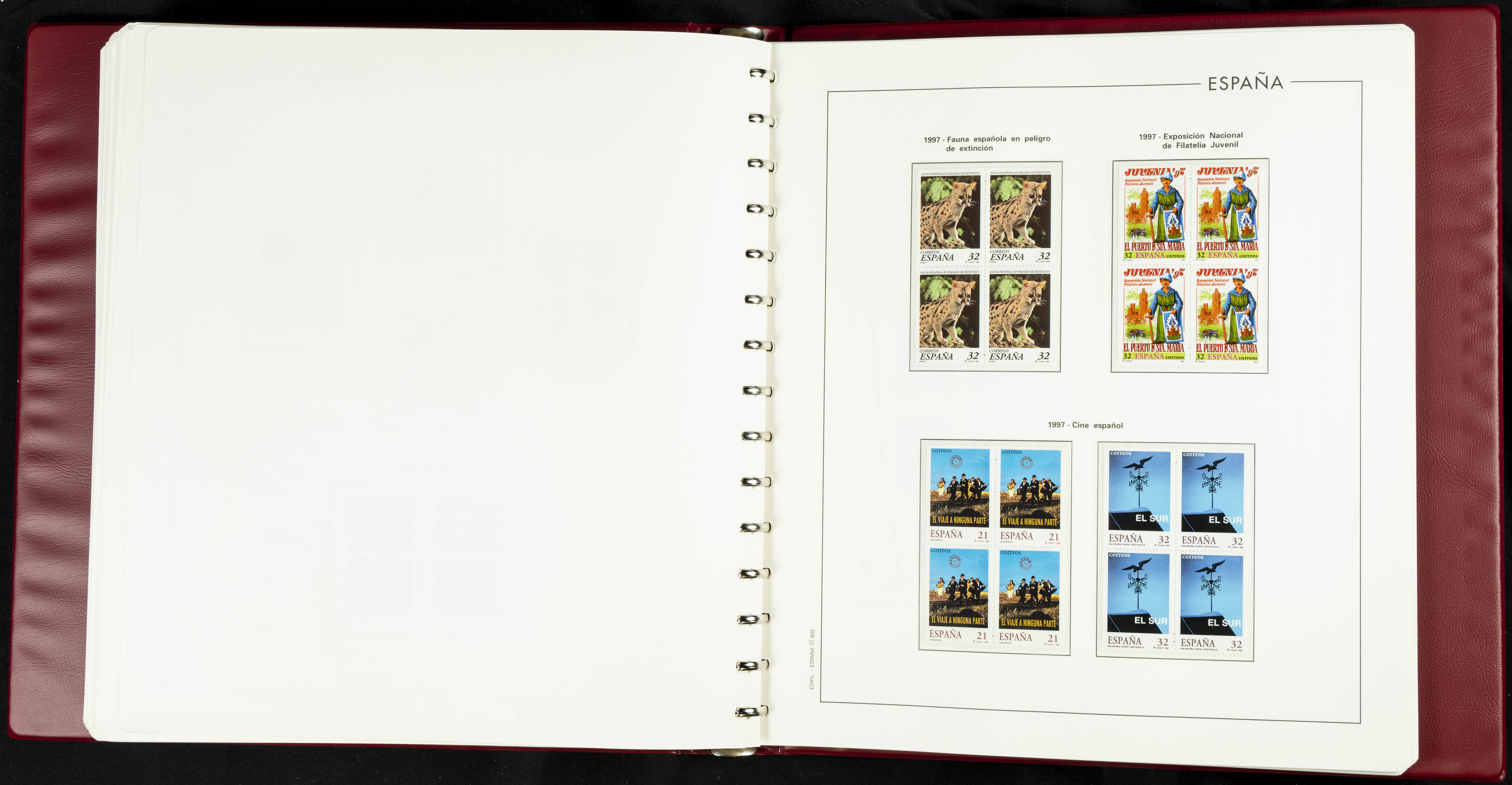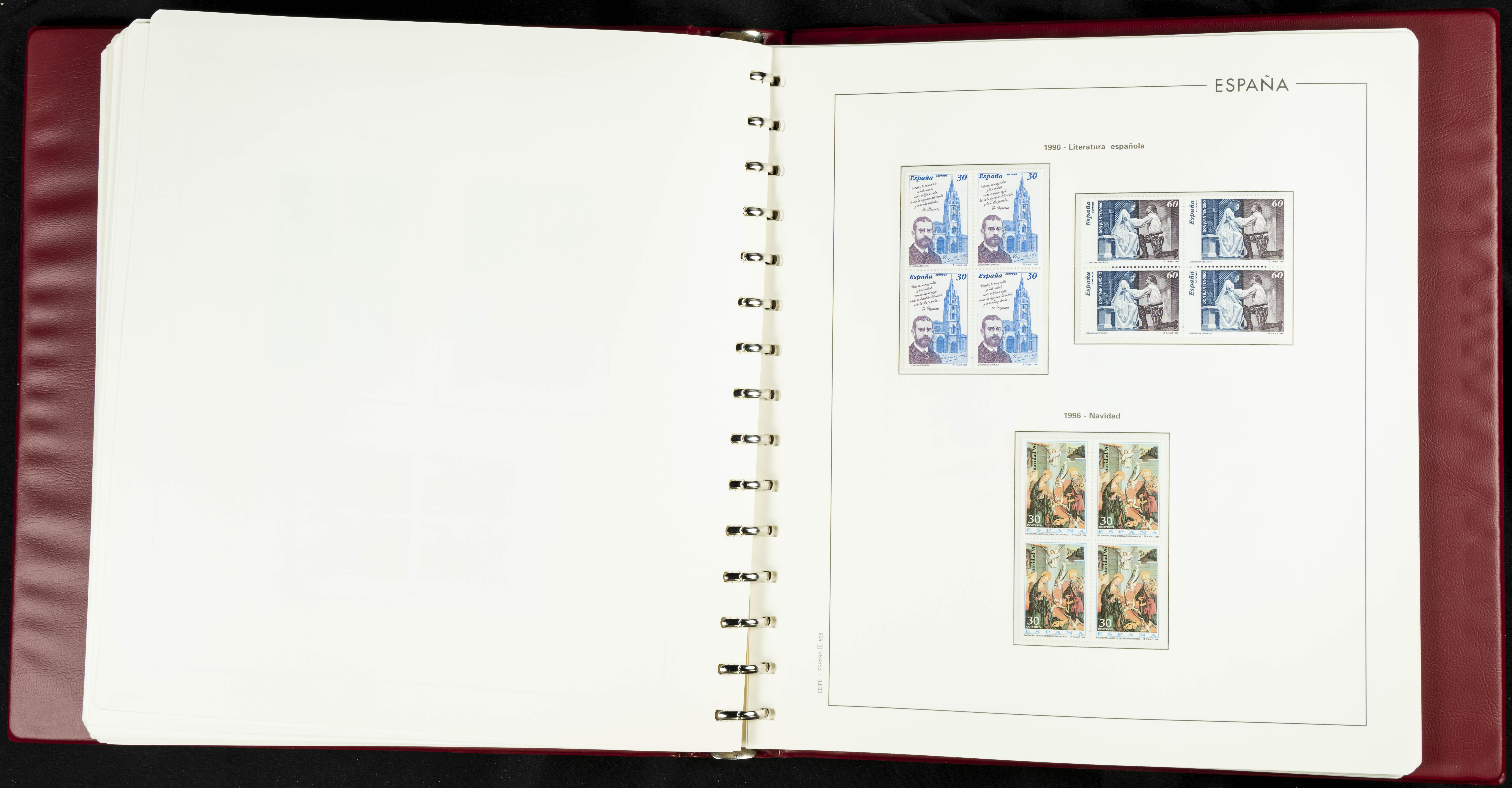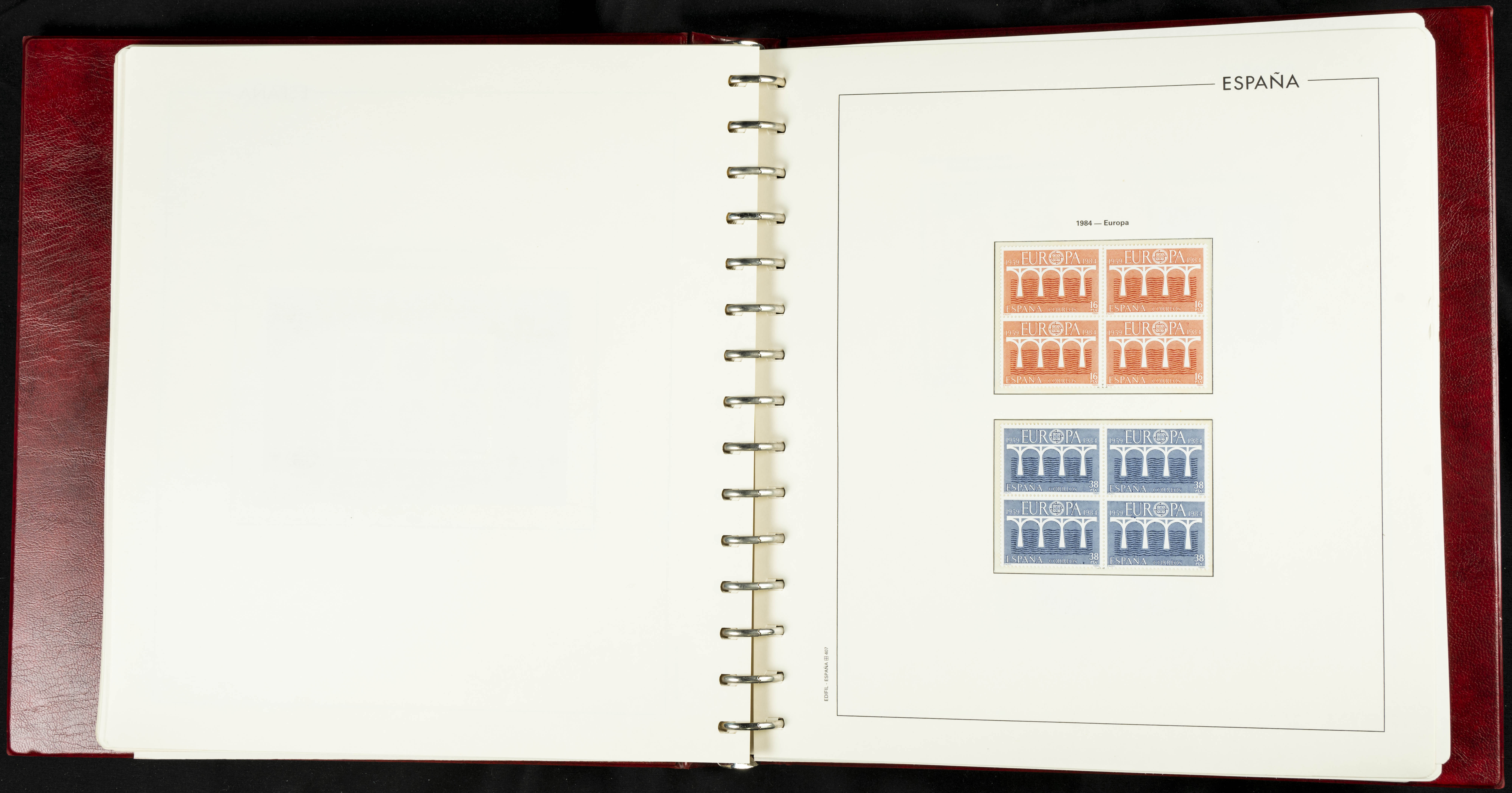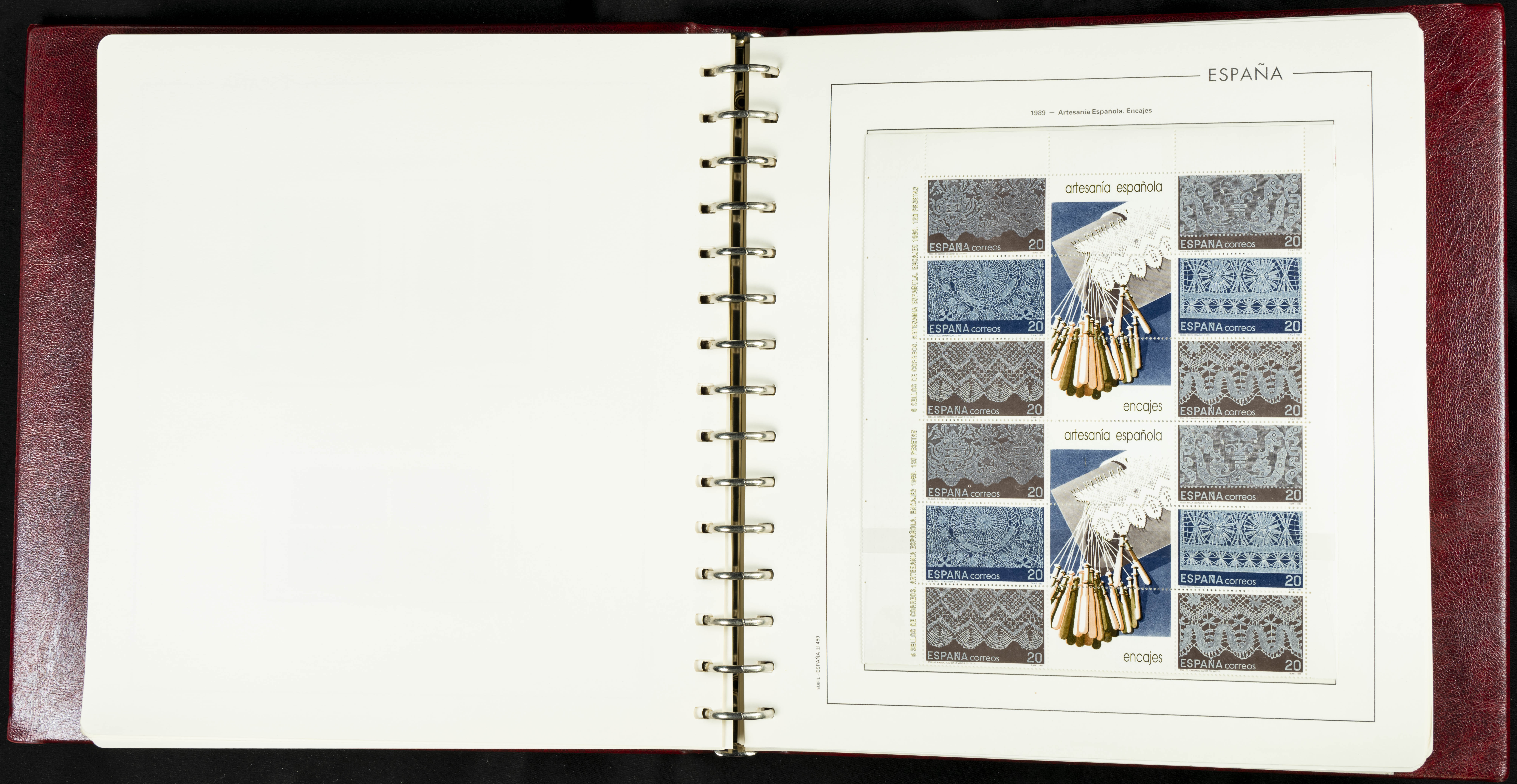 ★★(1976ca). Complete collection between 1976 and 1999, including the 2000 portion denominated exclusively in pesetas, in blocks of four (with a souvenir sheet), in mint condition (mounted in albums). HIGH CATALOGUE VALUE. TO BE EXAMINED.
