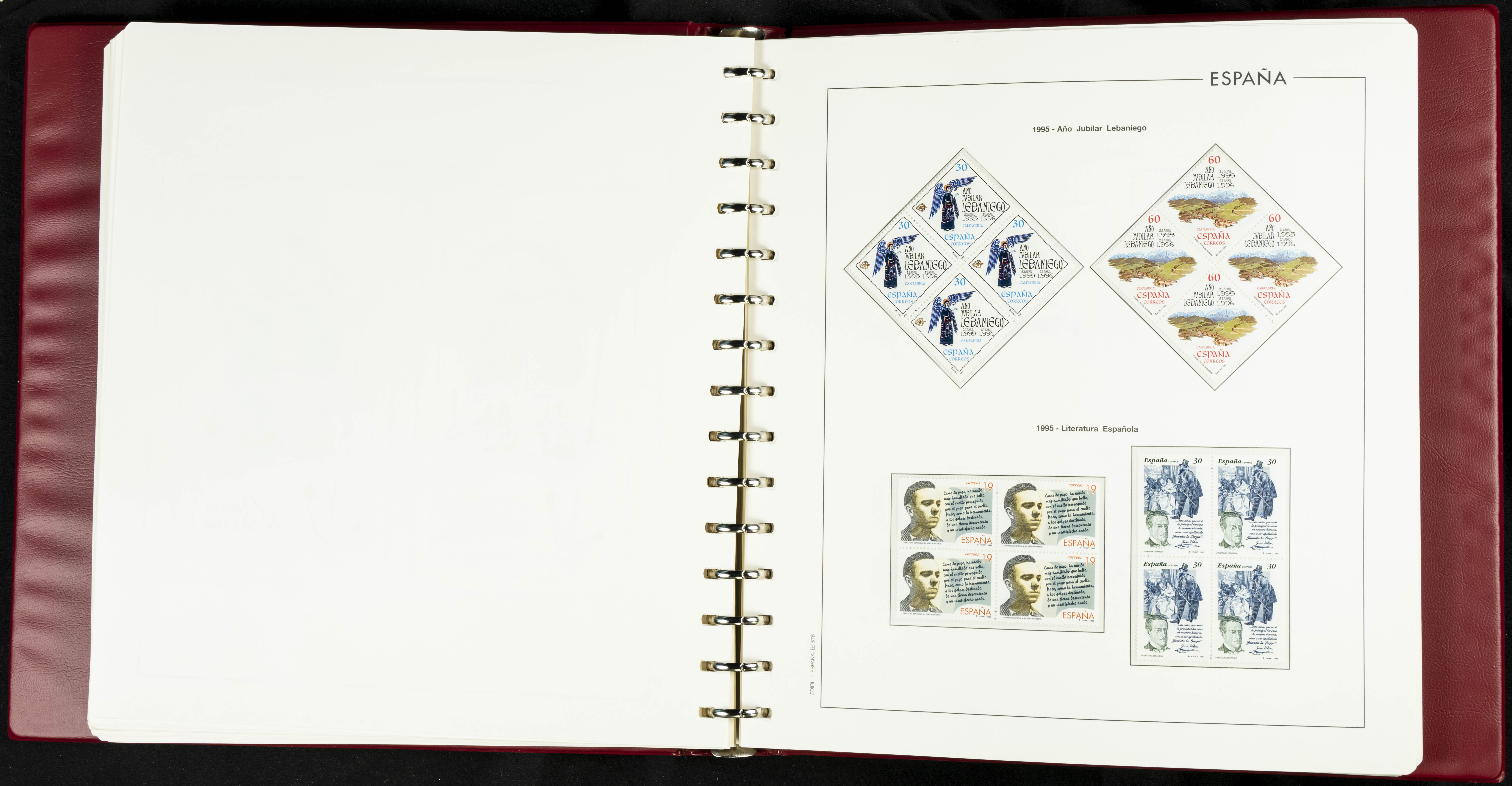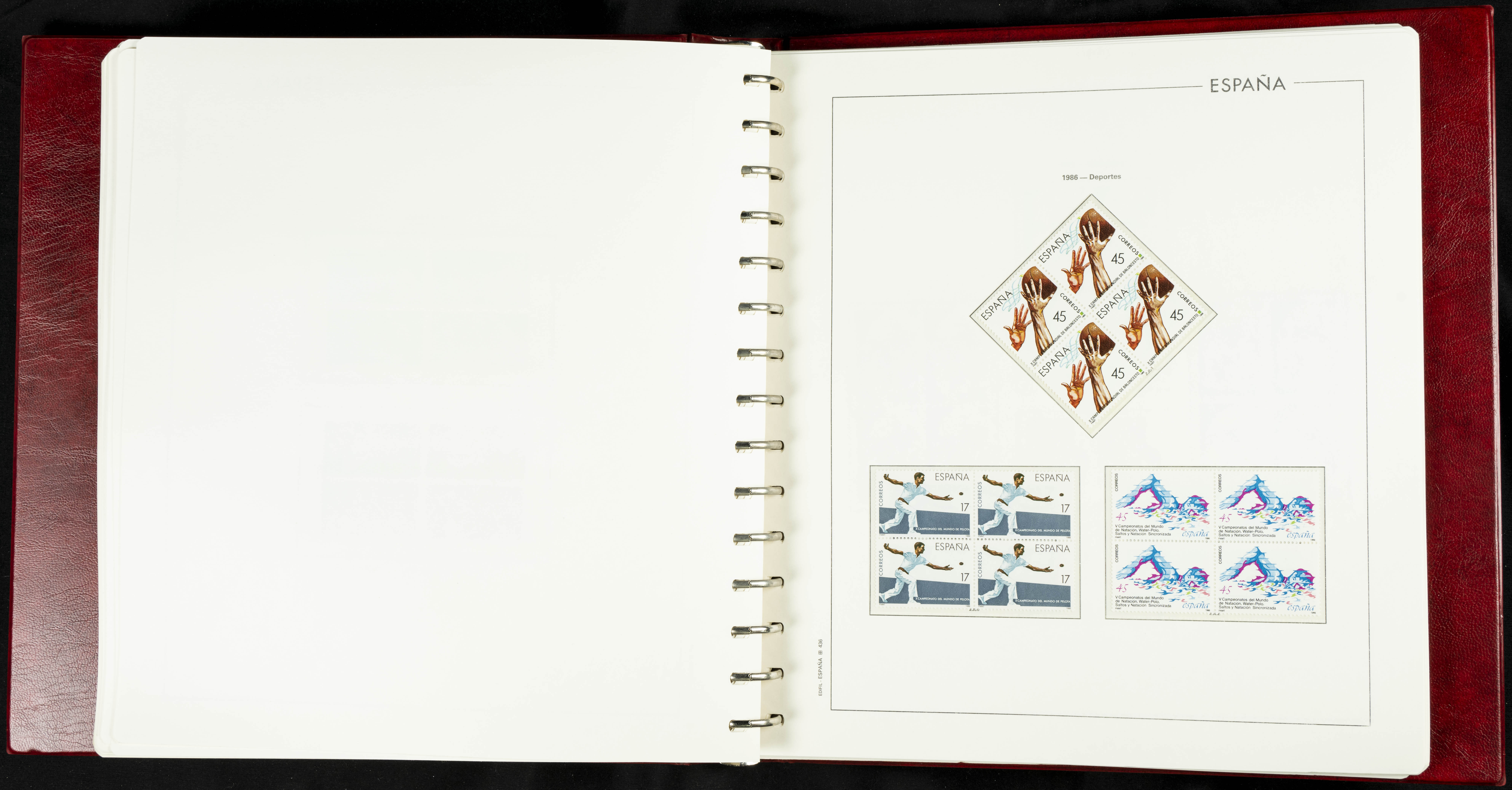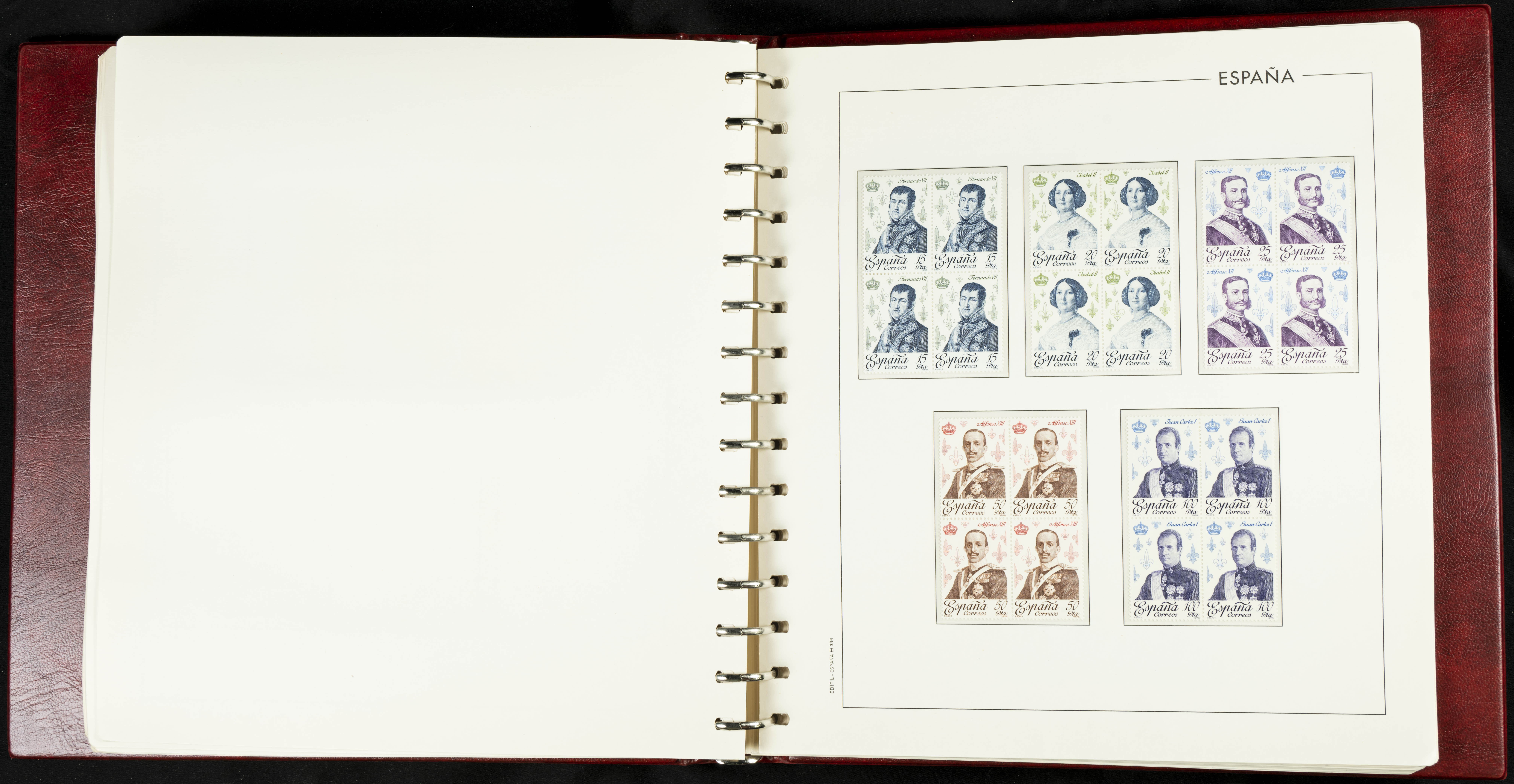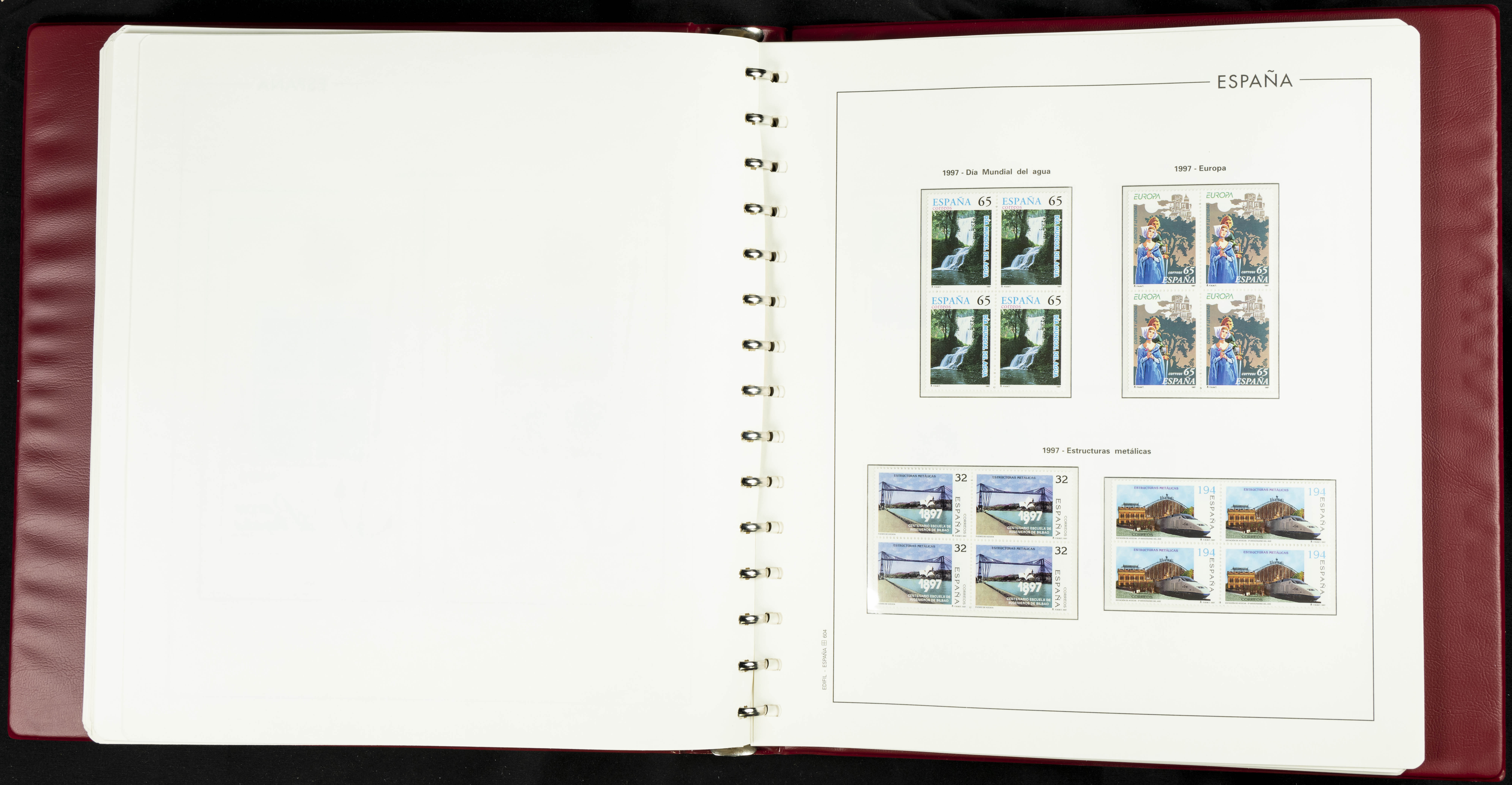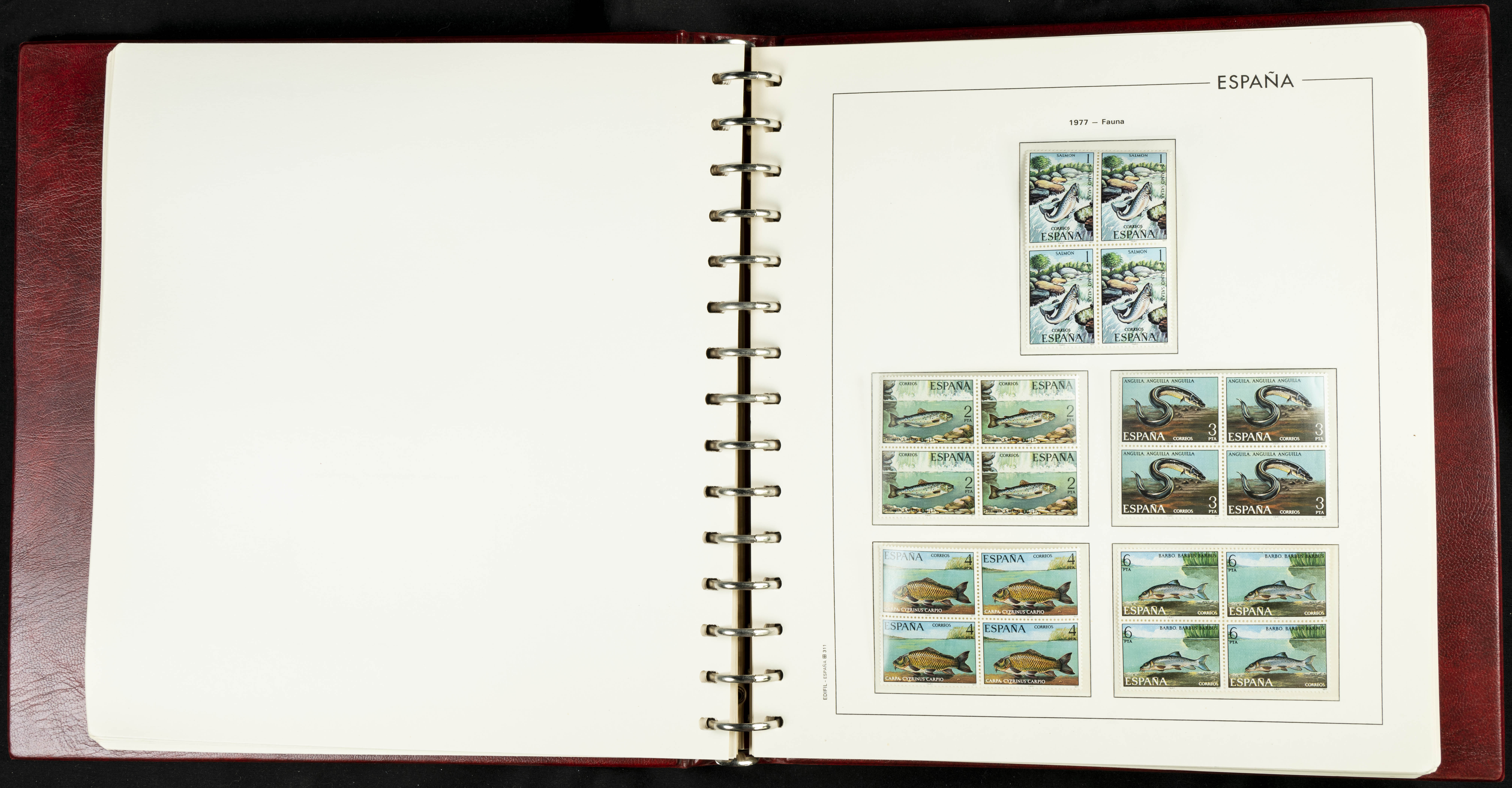 ★★(1976ca). Complete collection between 1976 and 1999, including the 2000 portion denominated exclusively in pesetas, in blocks of four (with a souvenir sheet), in mint condition (mounted in albums). HIGH CATALOGUE VALUE. TO BE EXAMINED.