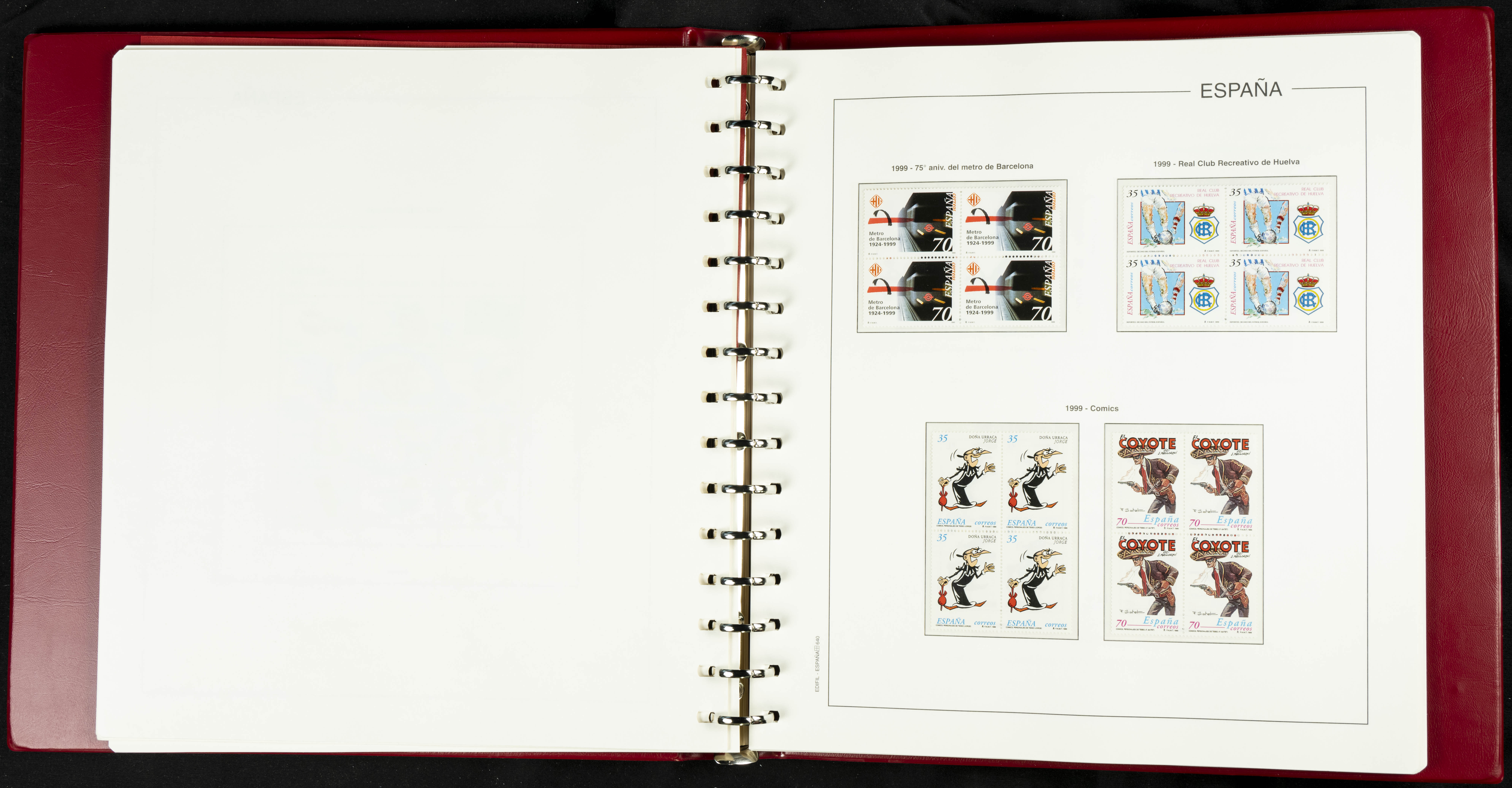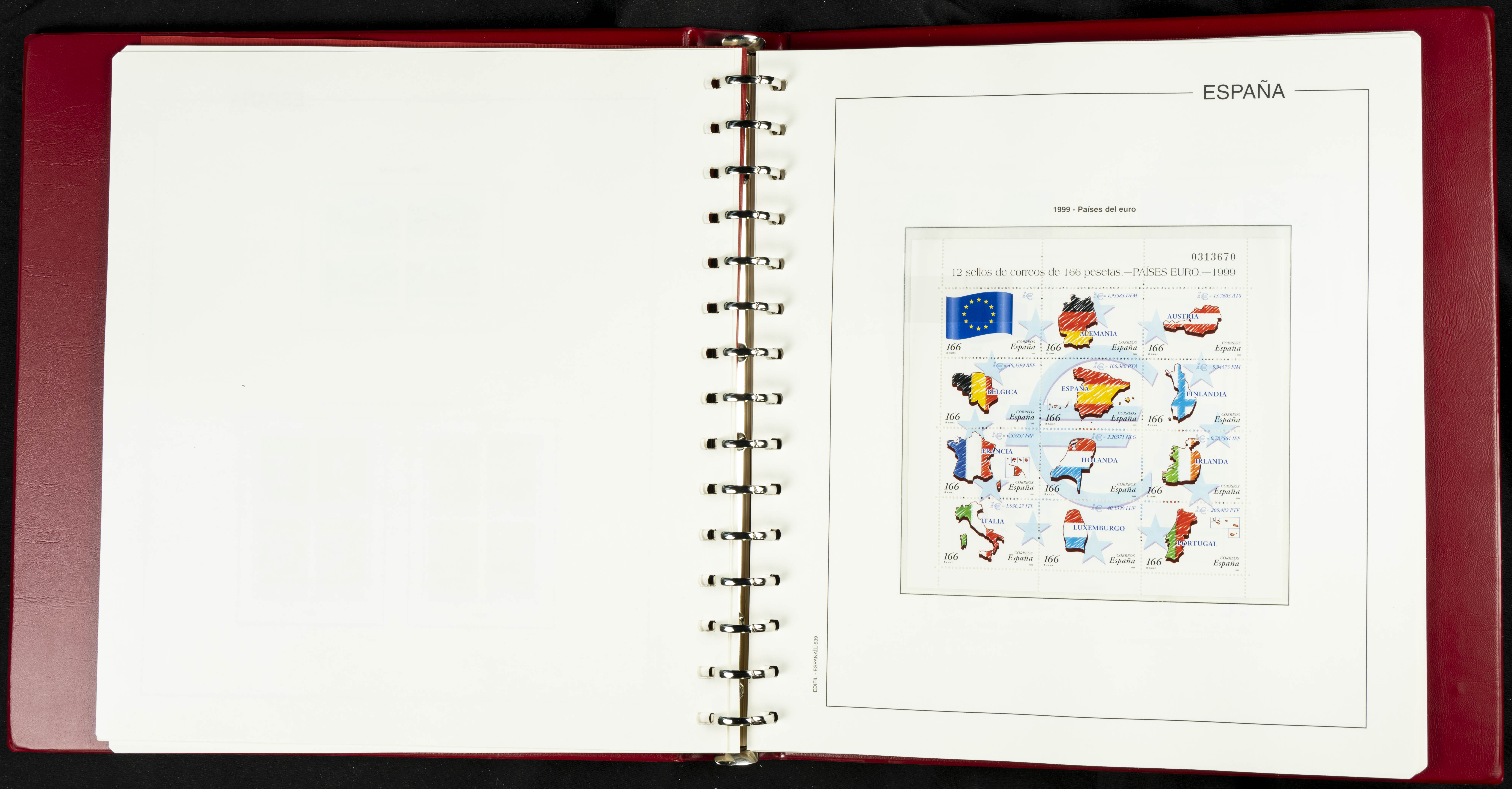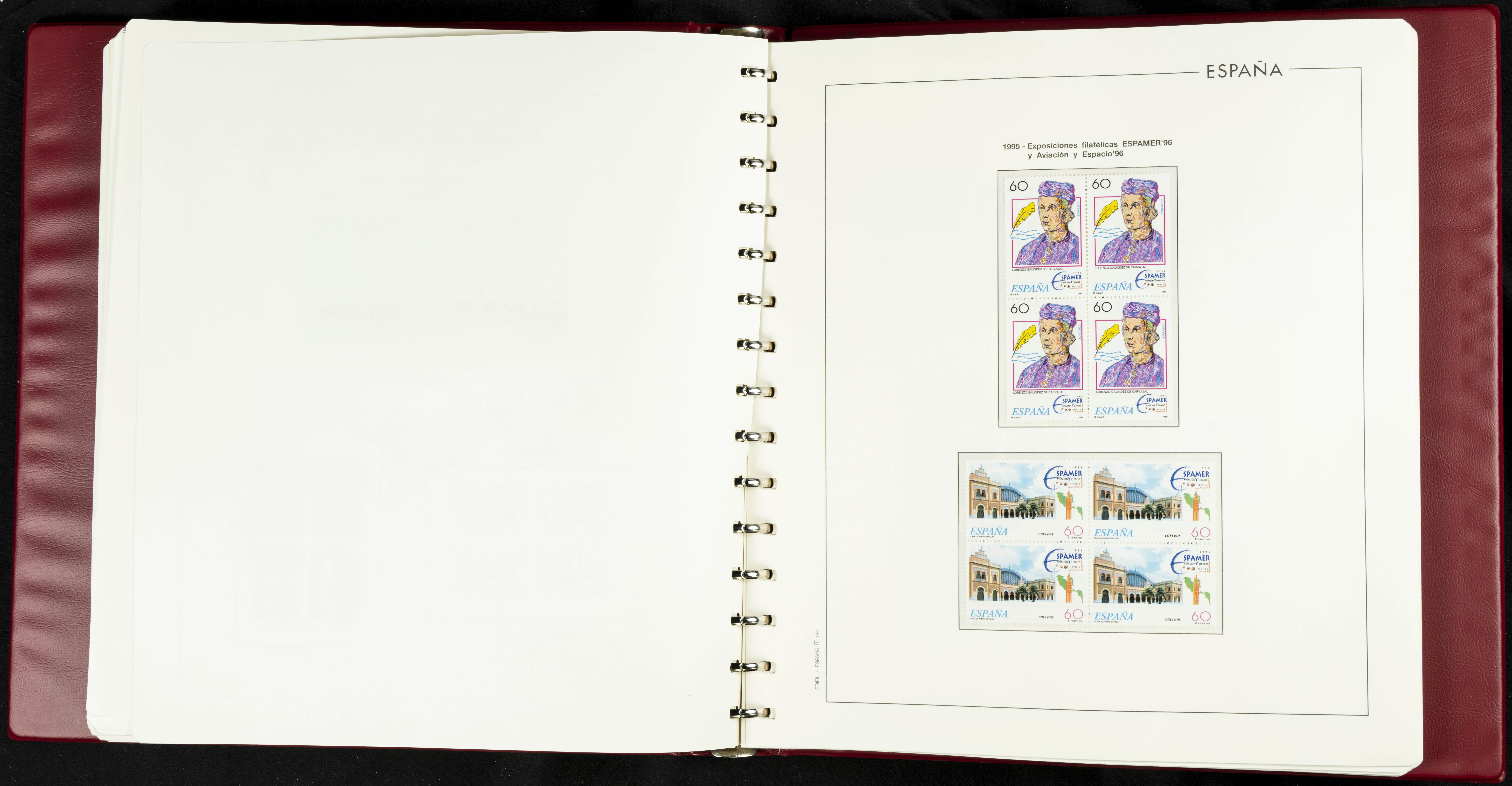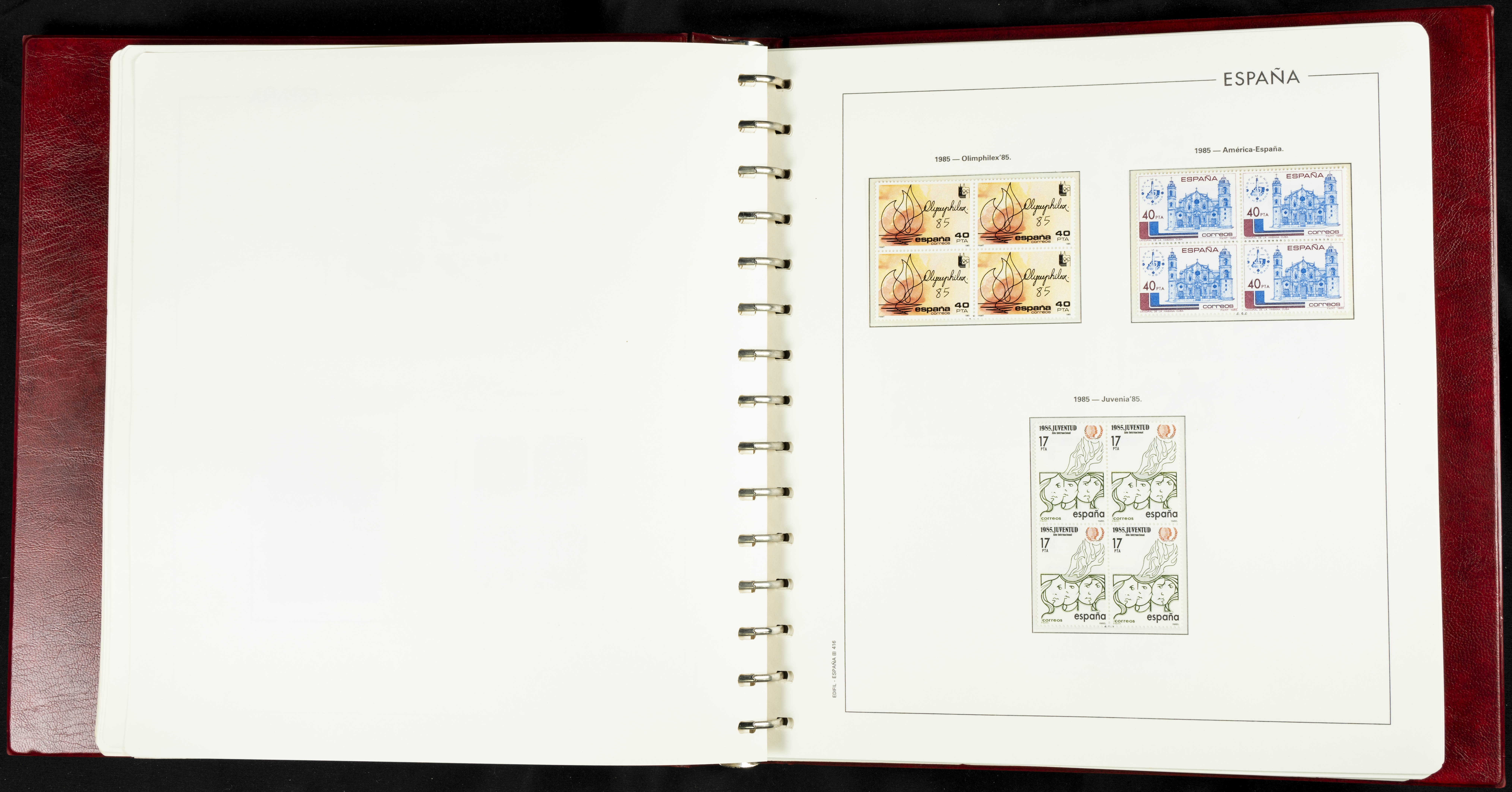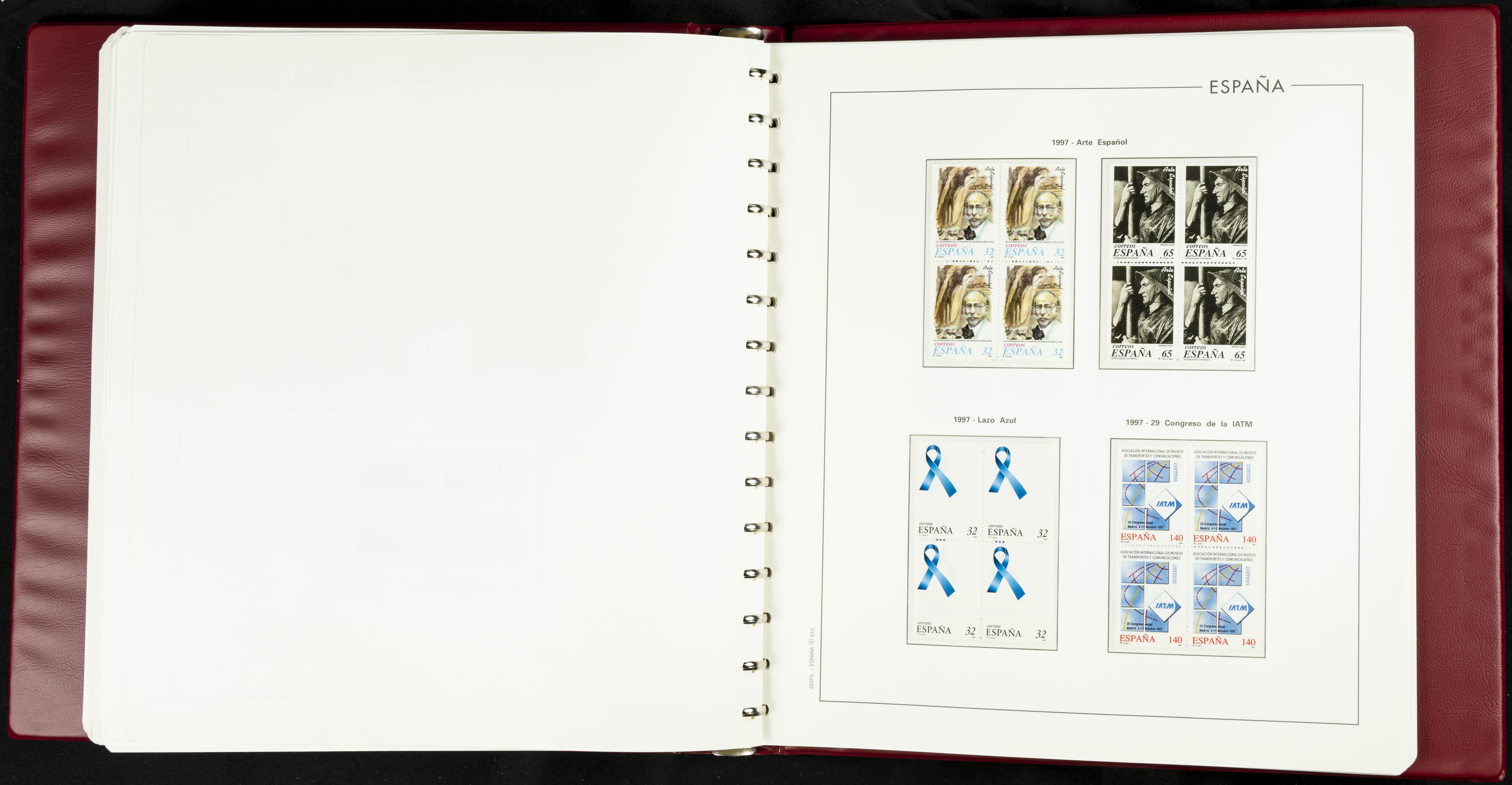 ★★(1976ca). Complete collection between 1976 and 1999, including the 2000 portion denominated exclusively in pesetas, in blocks of four (with a souvenir sheet), in mint condition (mounted in albums). HIGH CATALOGUE VALUE. TO BE EXAMINED.