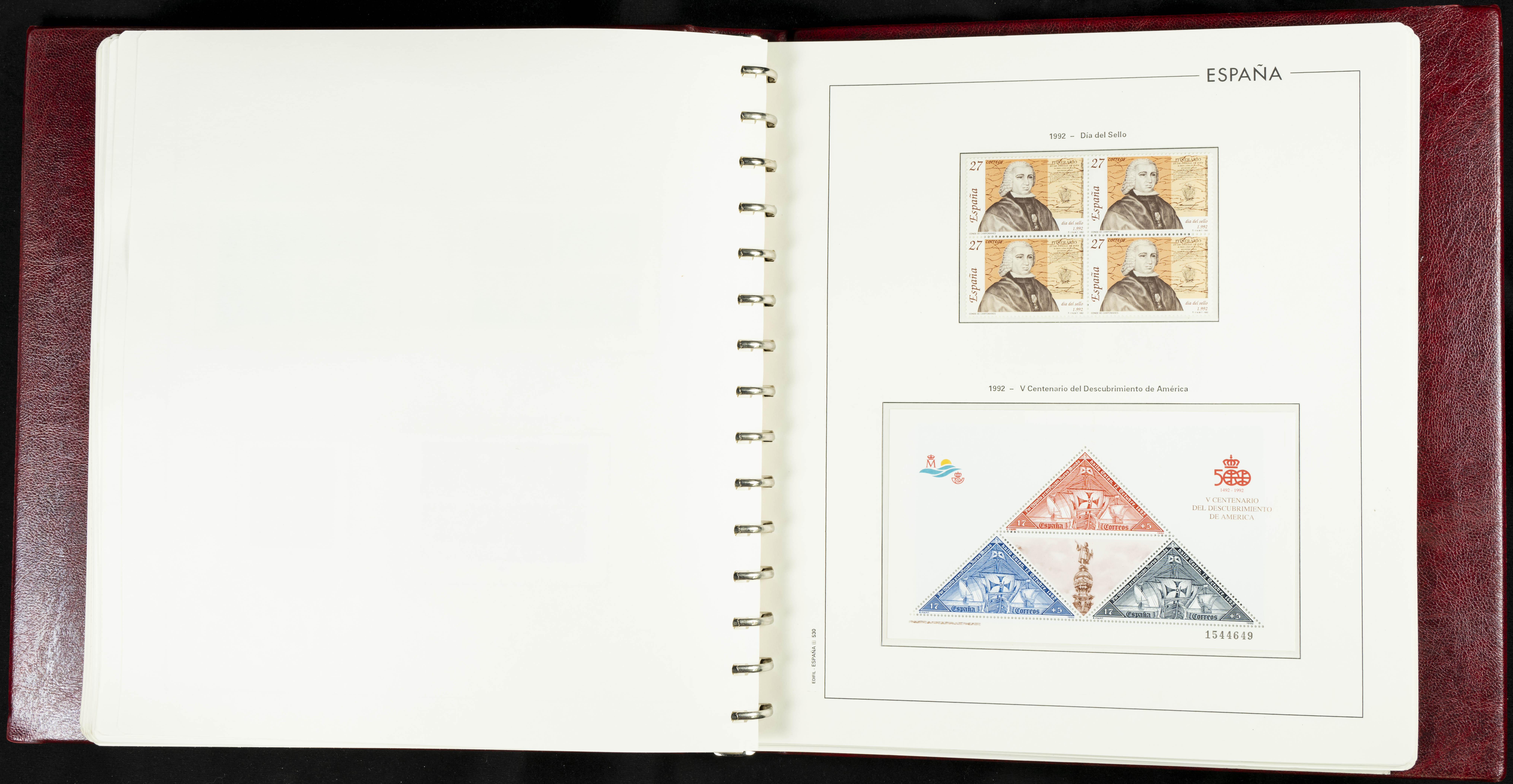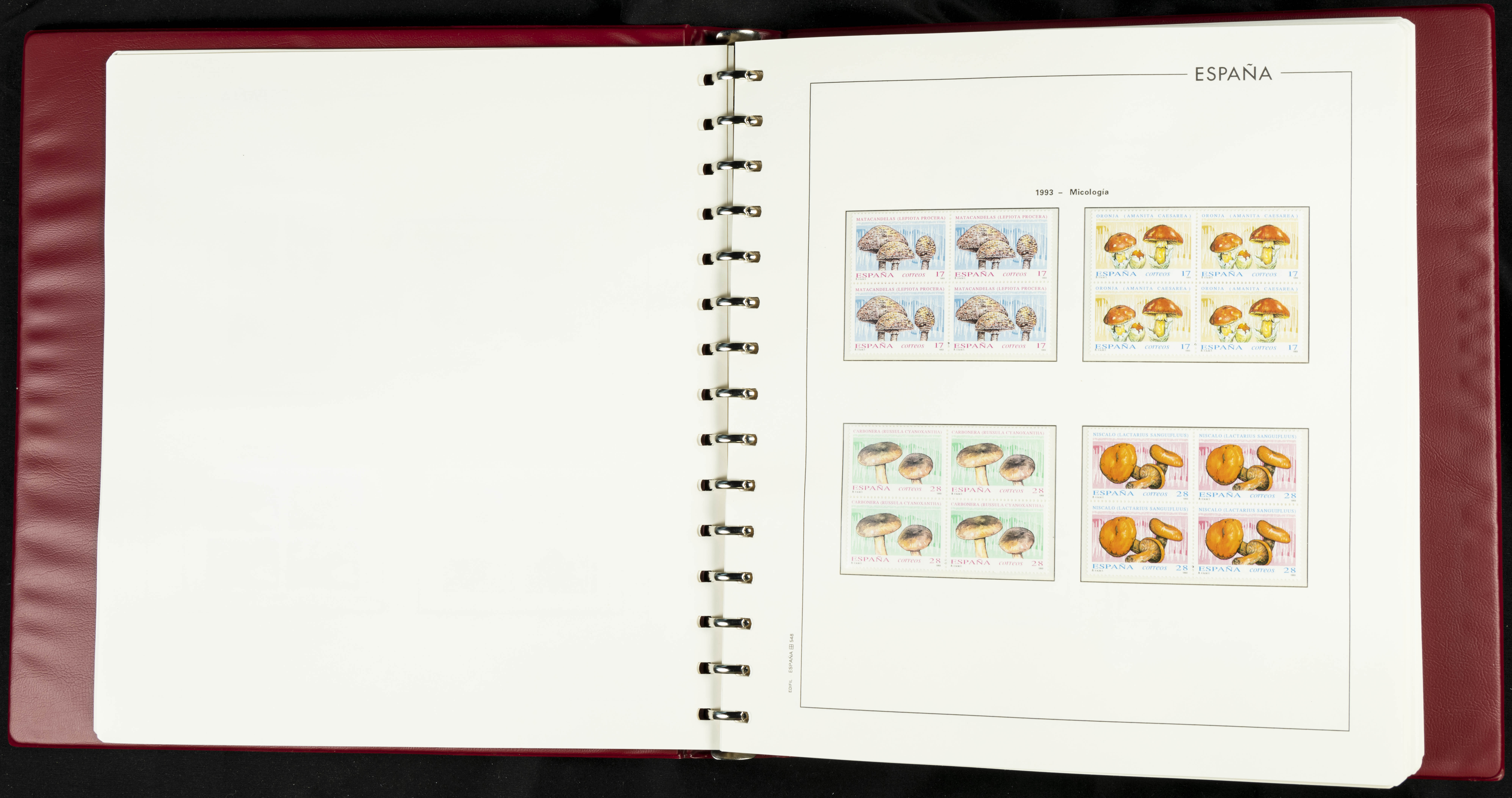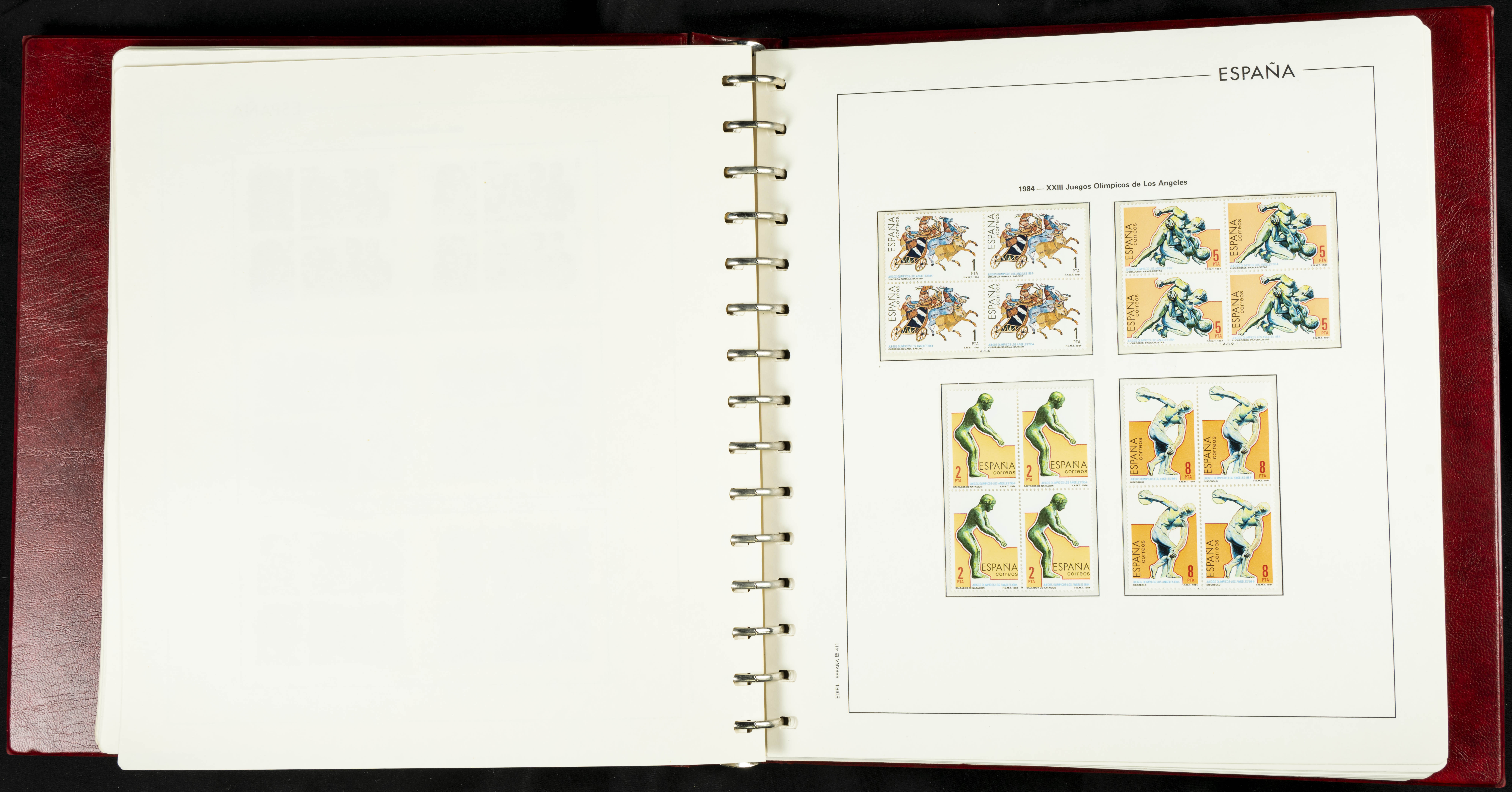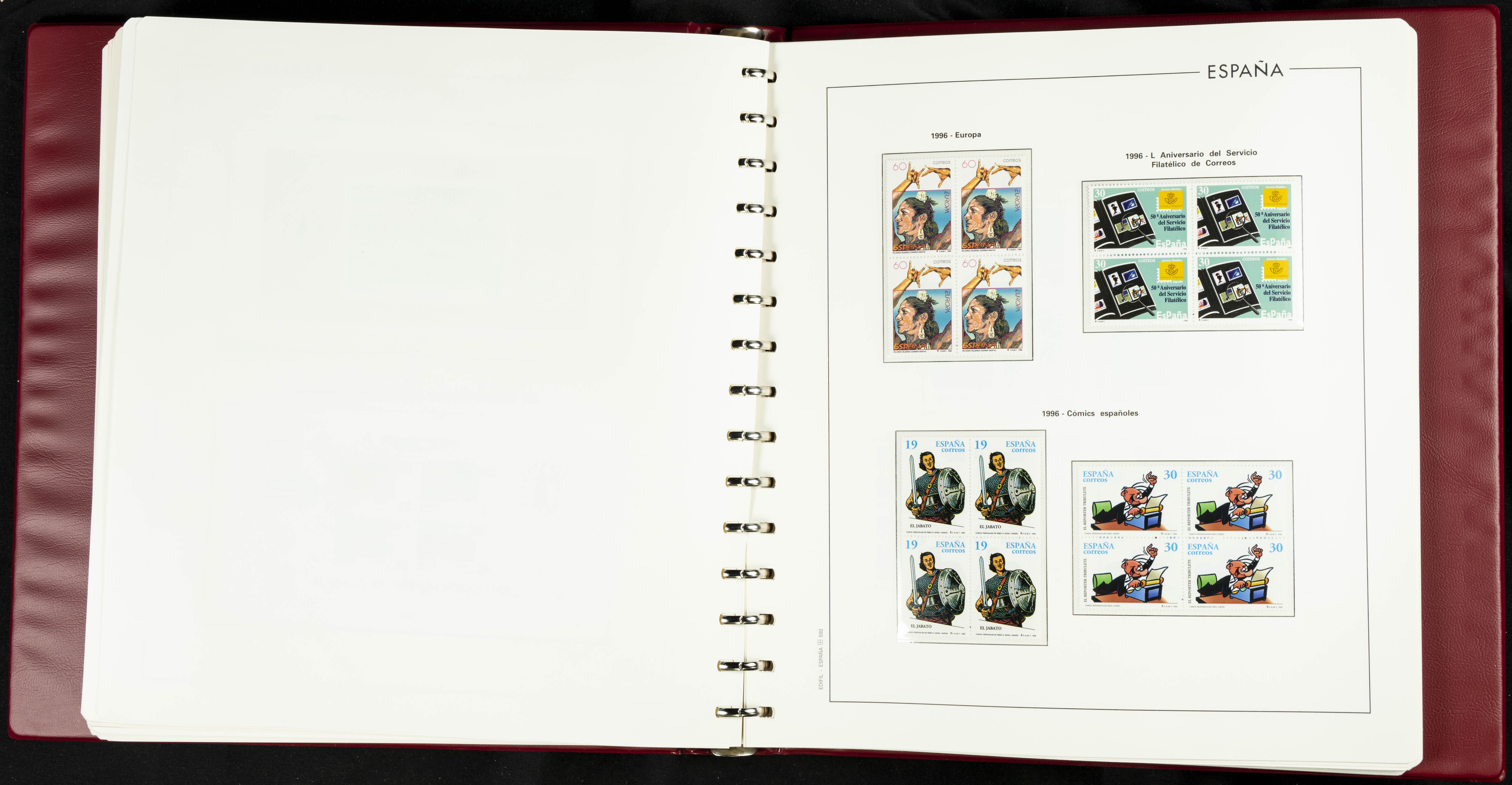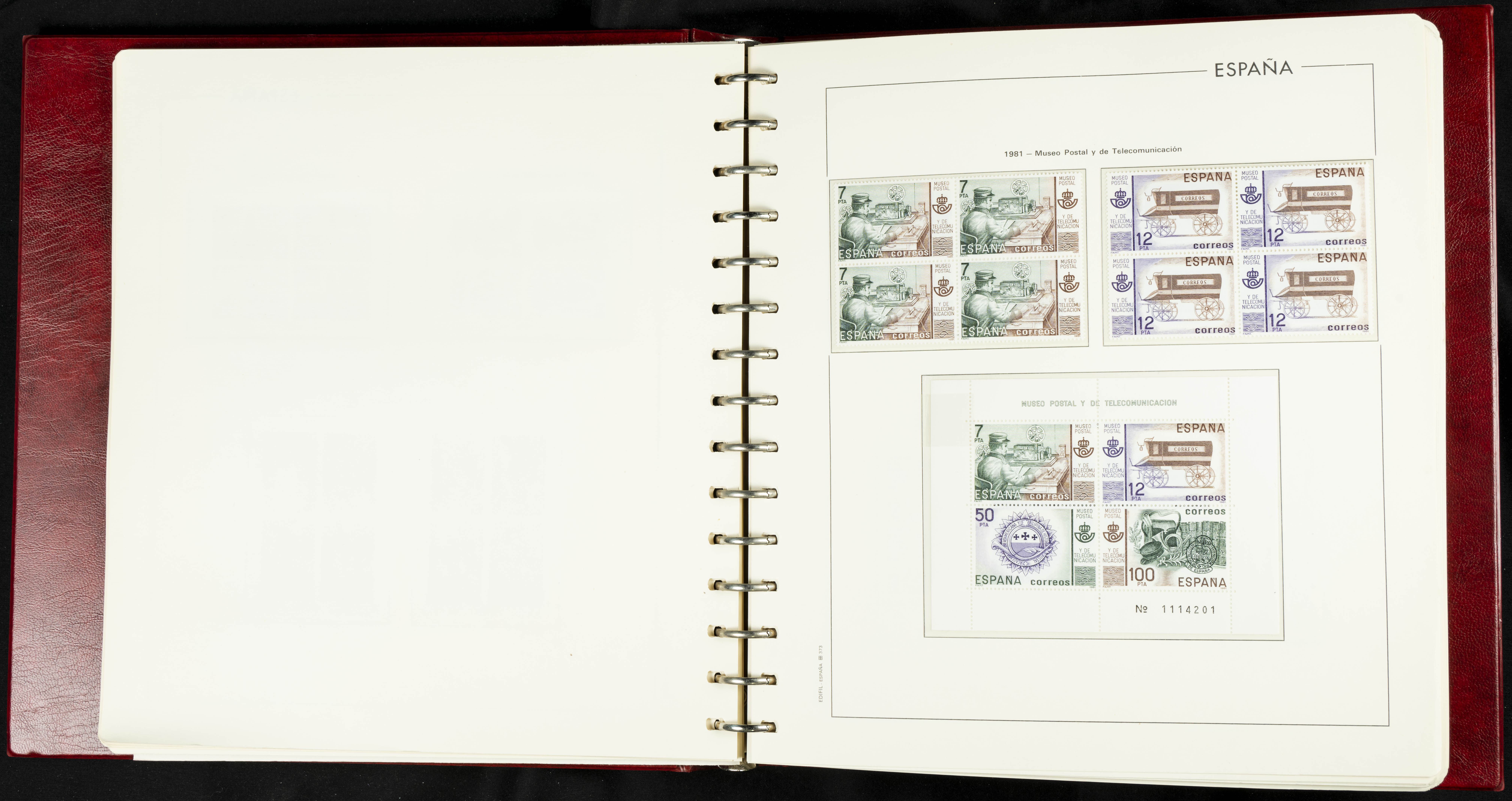 ★★(1976ca). Complete collection between 1976 and 1999, including the 2000 portion denominated exclusively in pesetas, in blocks of four (with a souvenir sheet), in mint condition (mounted in albums). HIGH CATALOGUE VALUE. TO BE EXAMINED.