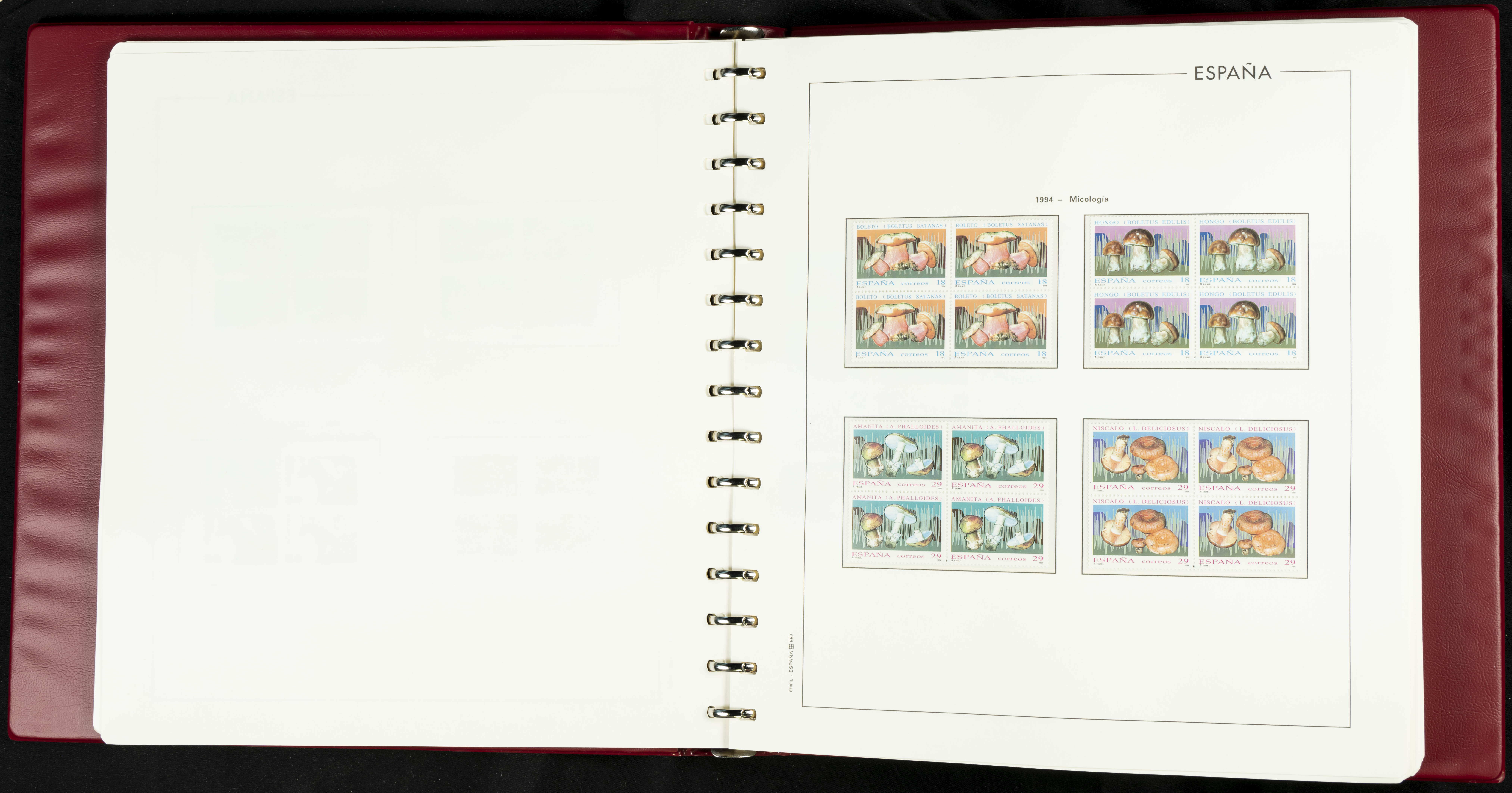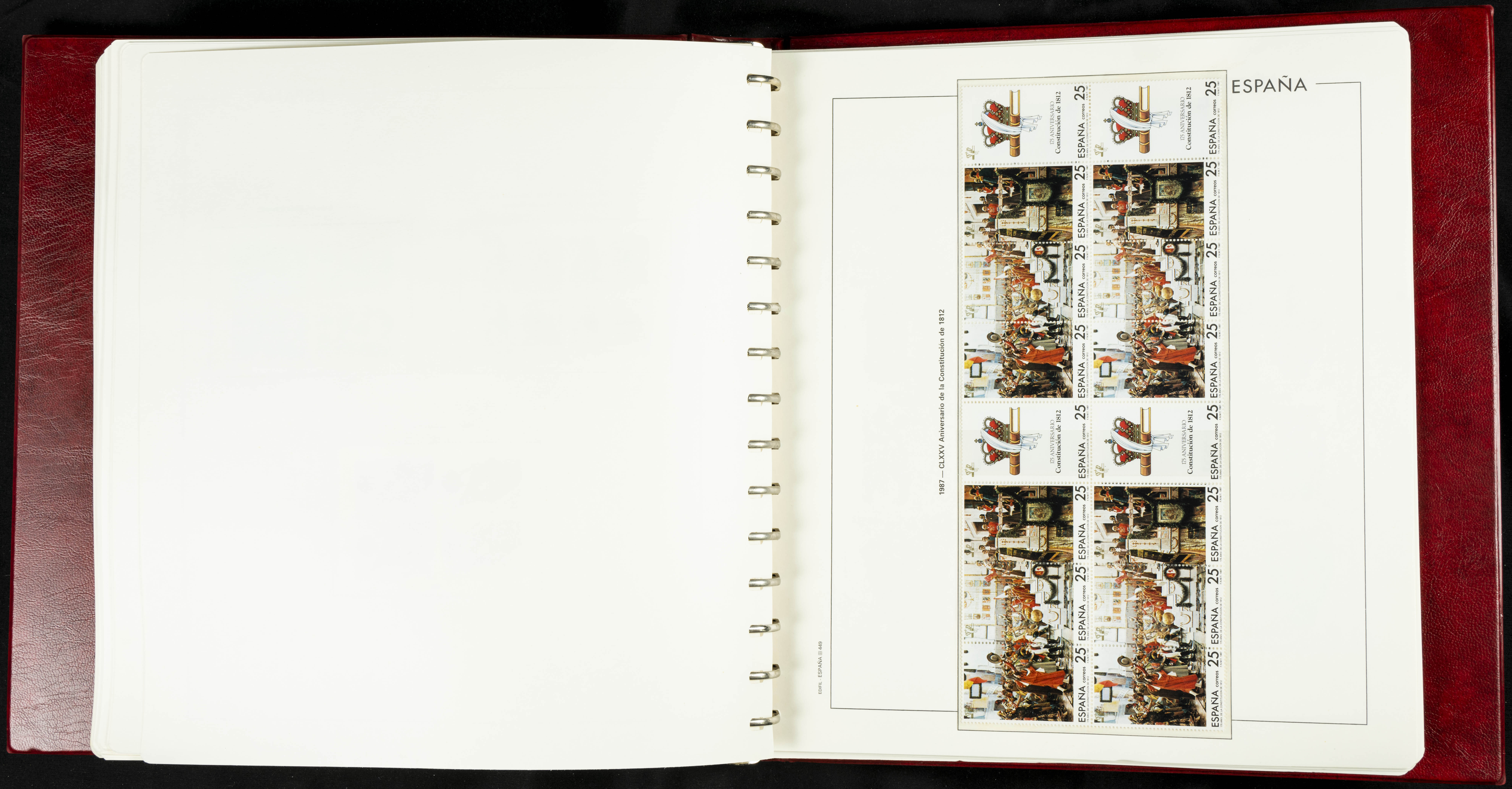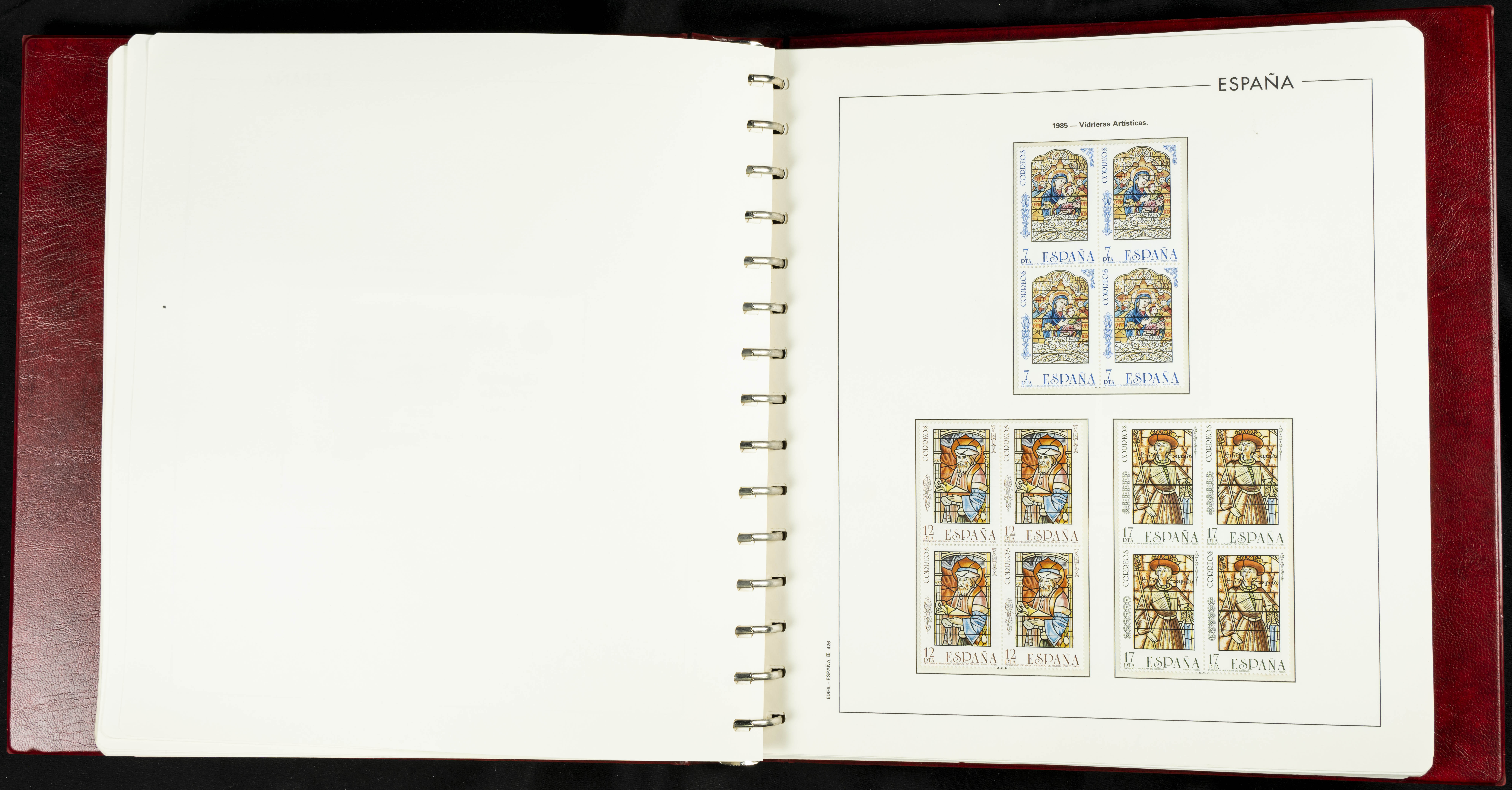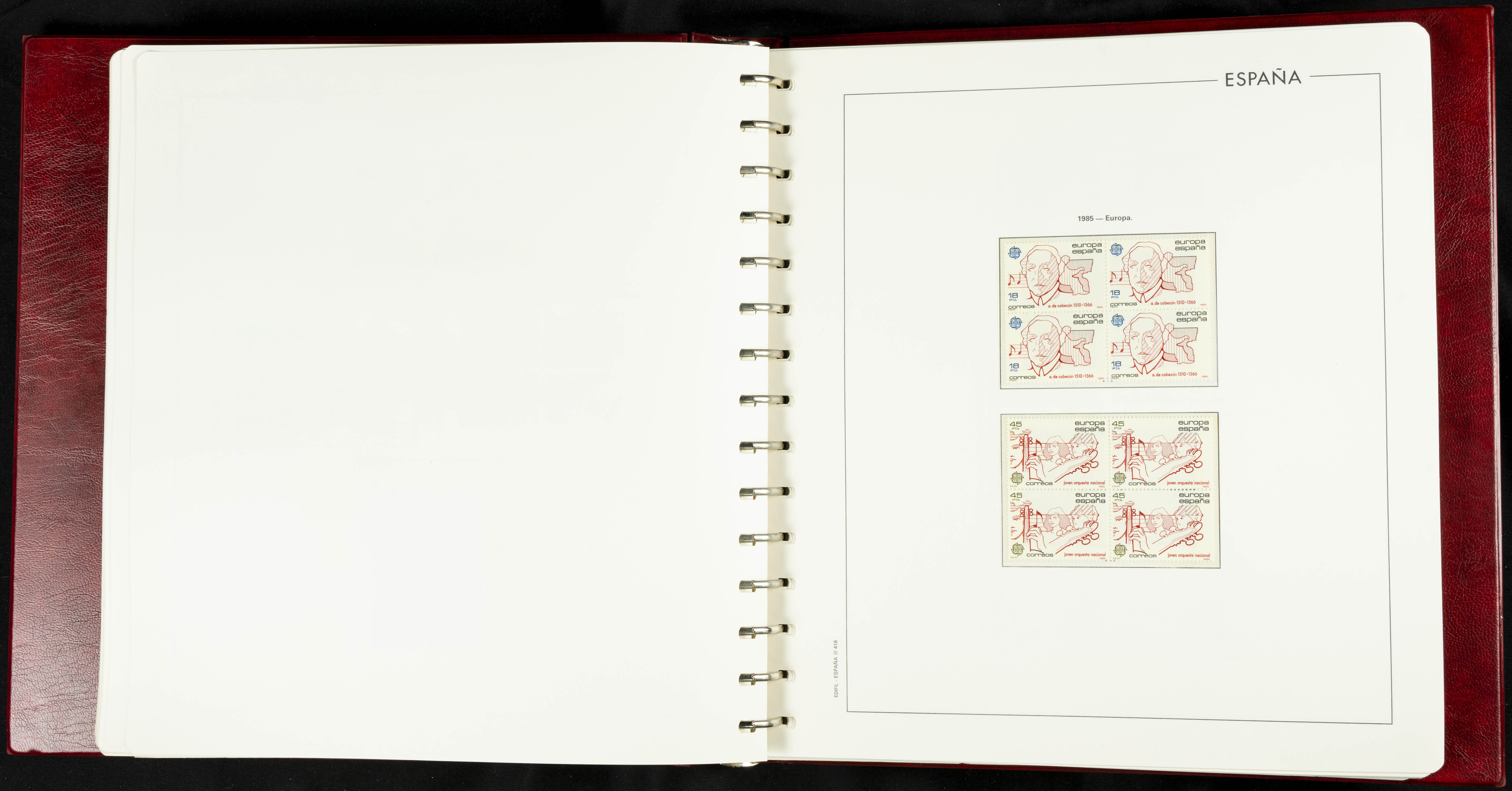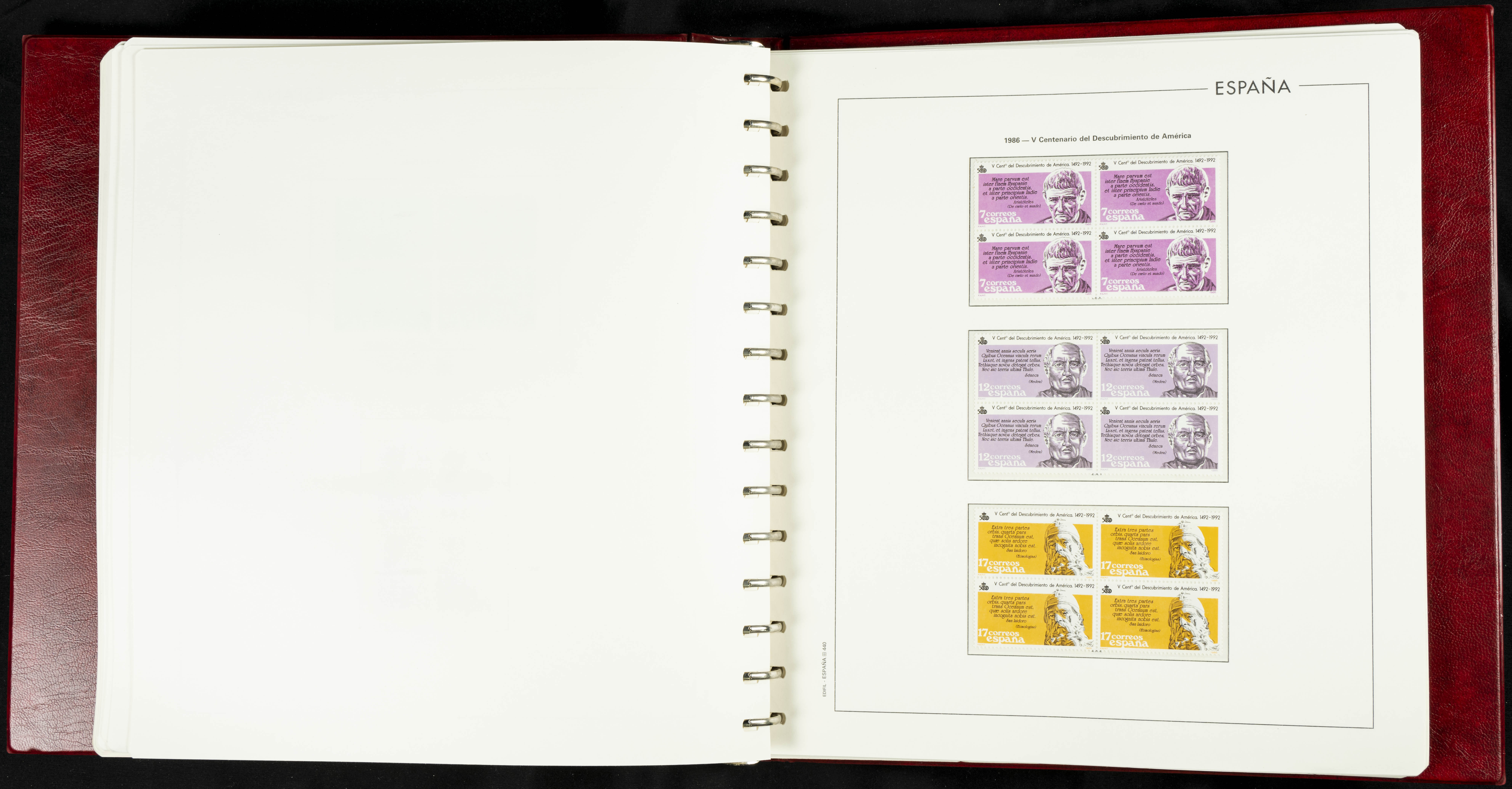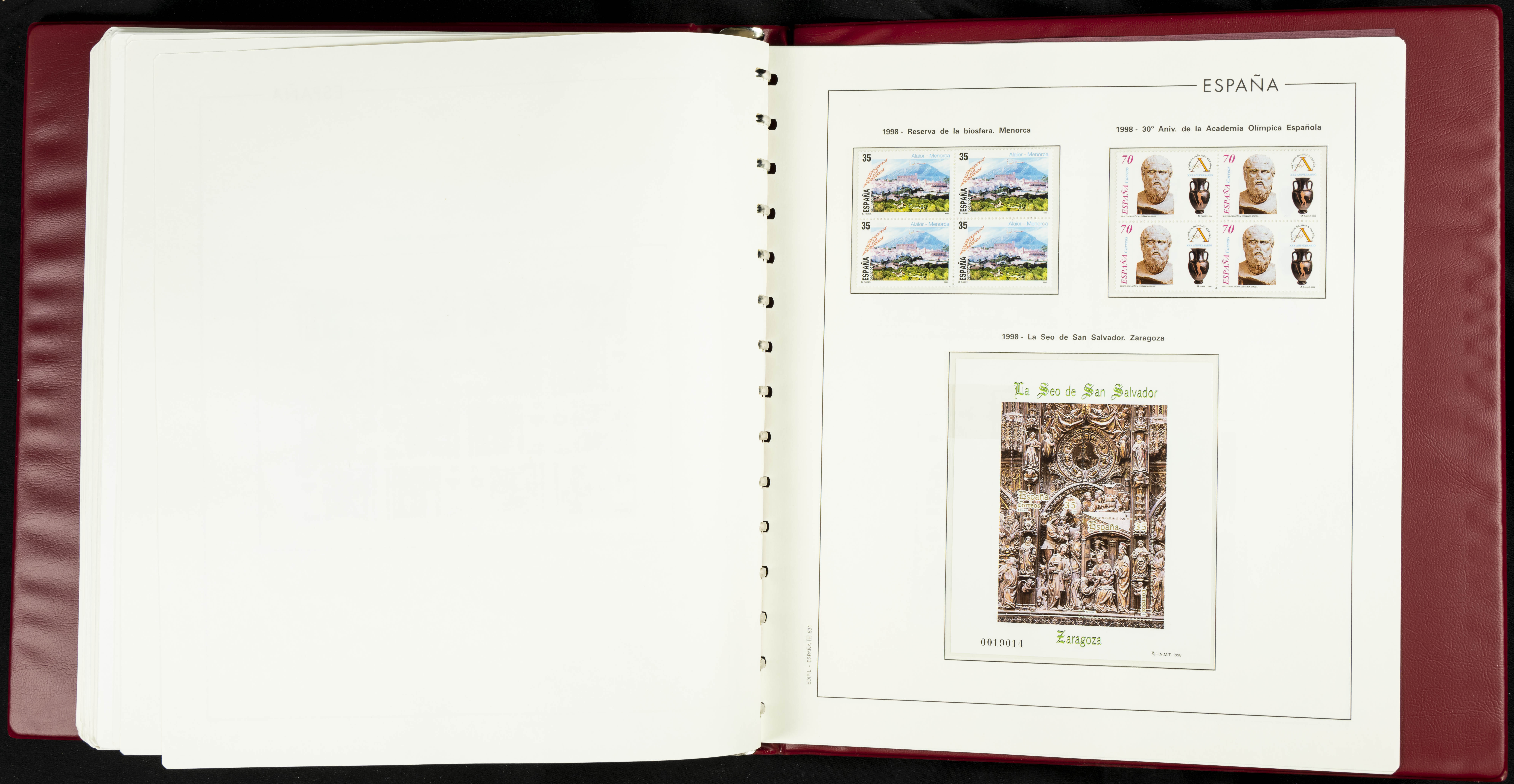 ★★(1976ca). Complete collection between 1976 and 1999, including the 2000 portion denominated exclusively in pesetas, in blocks of four (with a souvenir sheet), in mint condition (mounted in albums). HIGH CATALOGUE VALUE. TO BE EXAMINED.