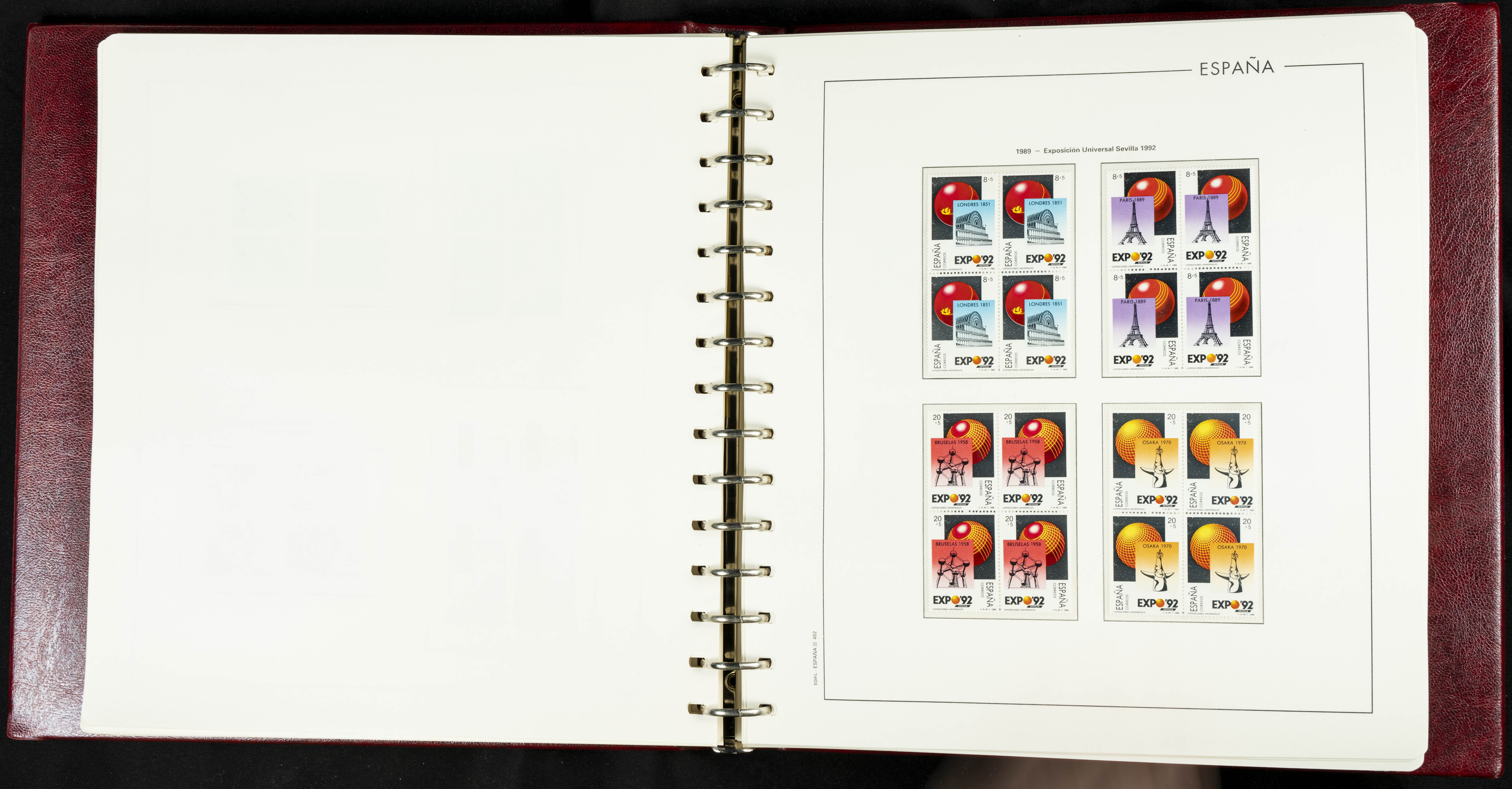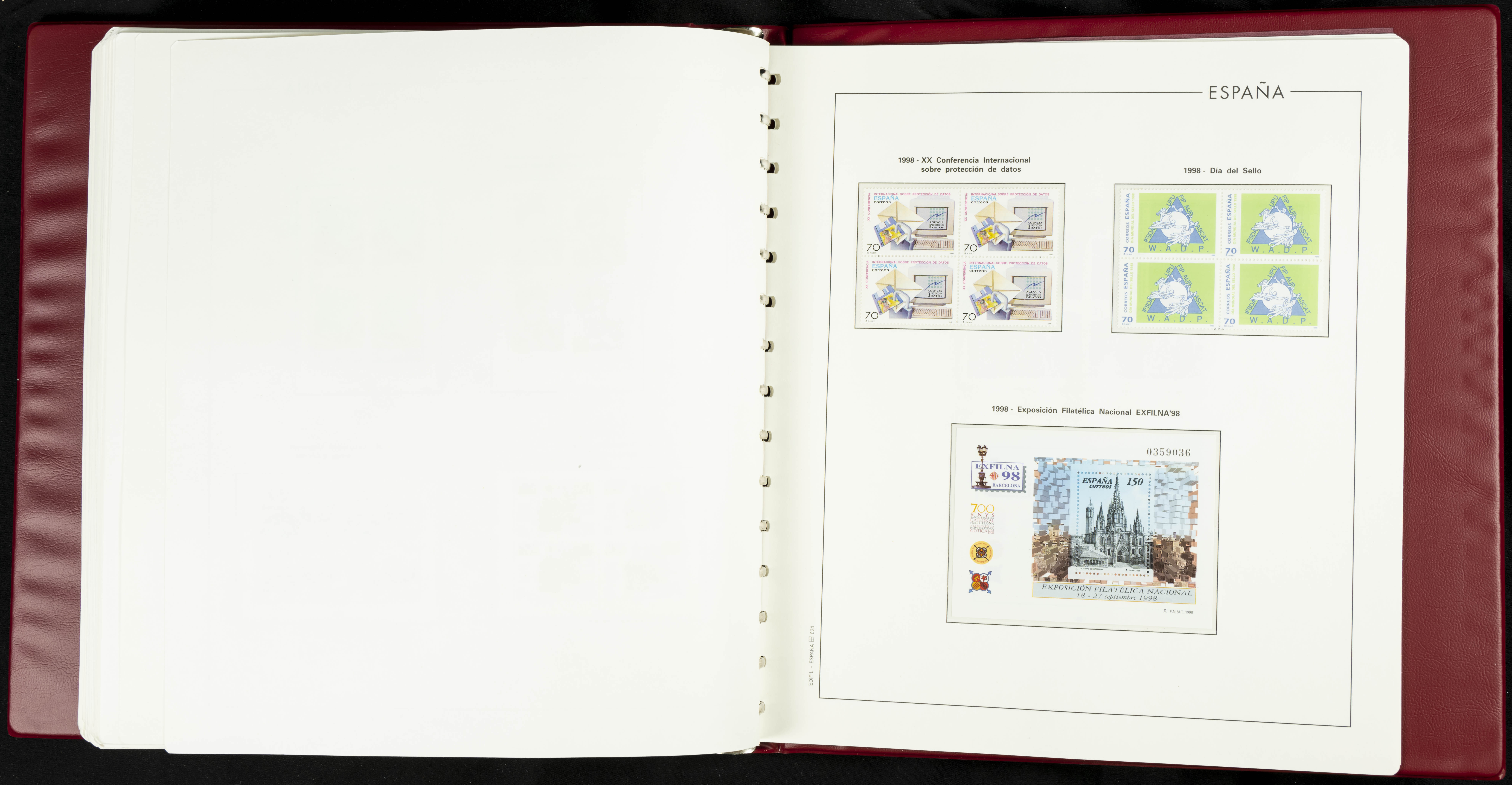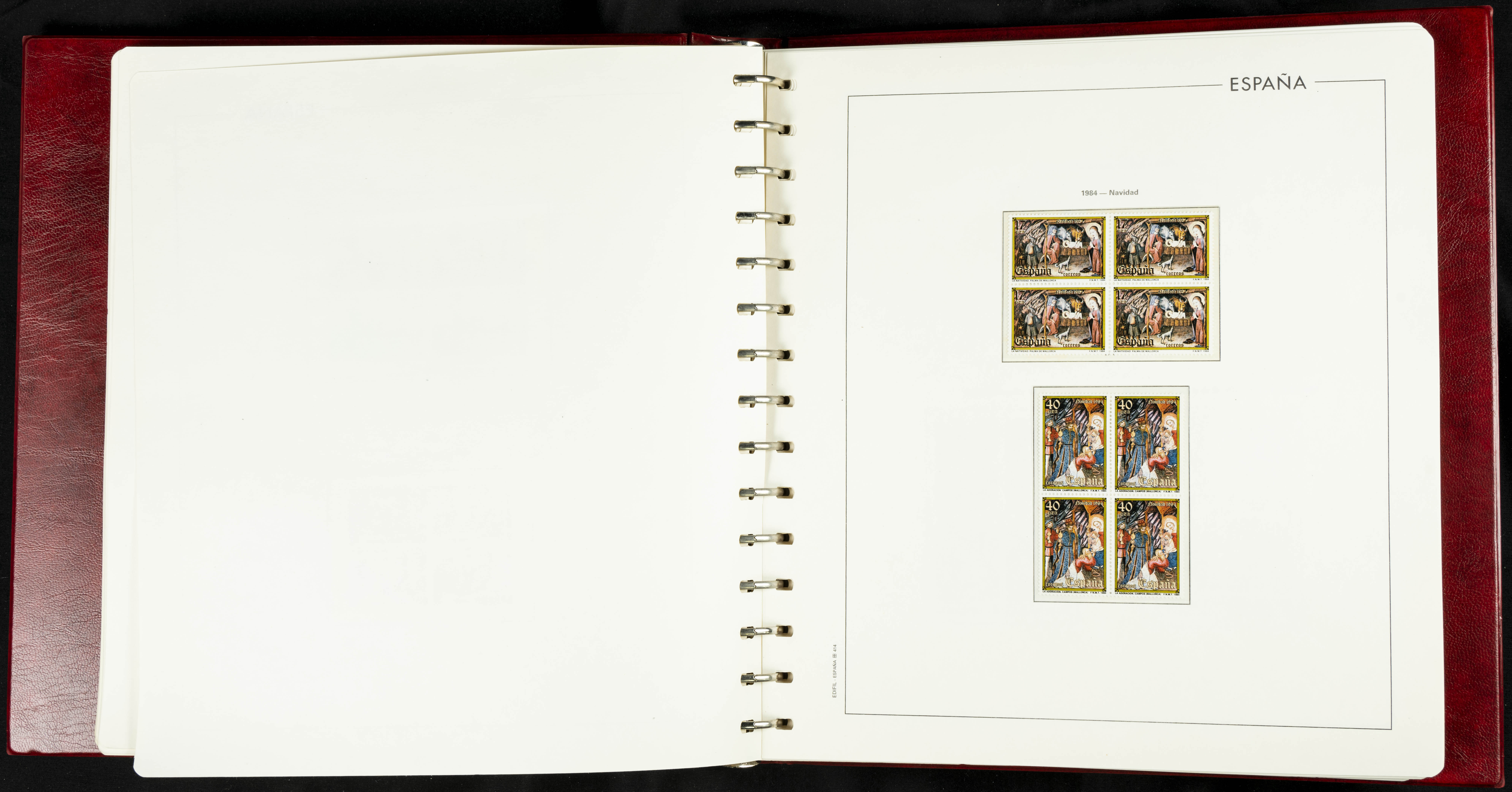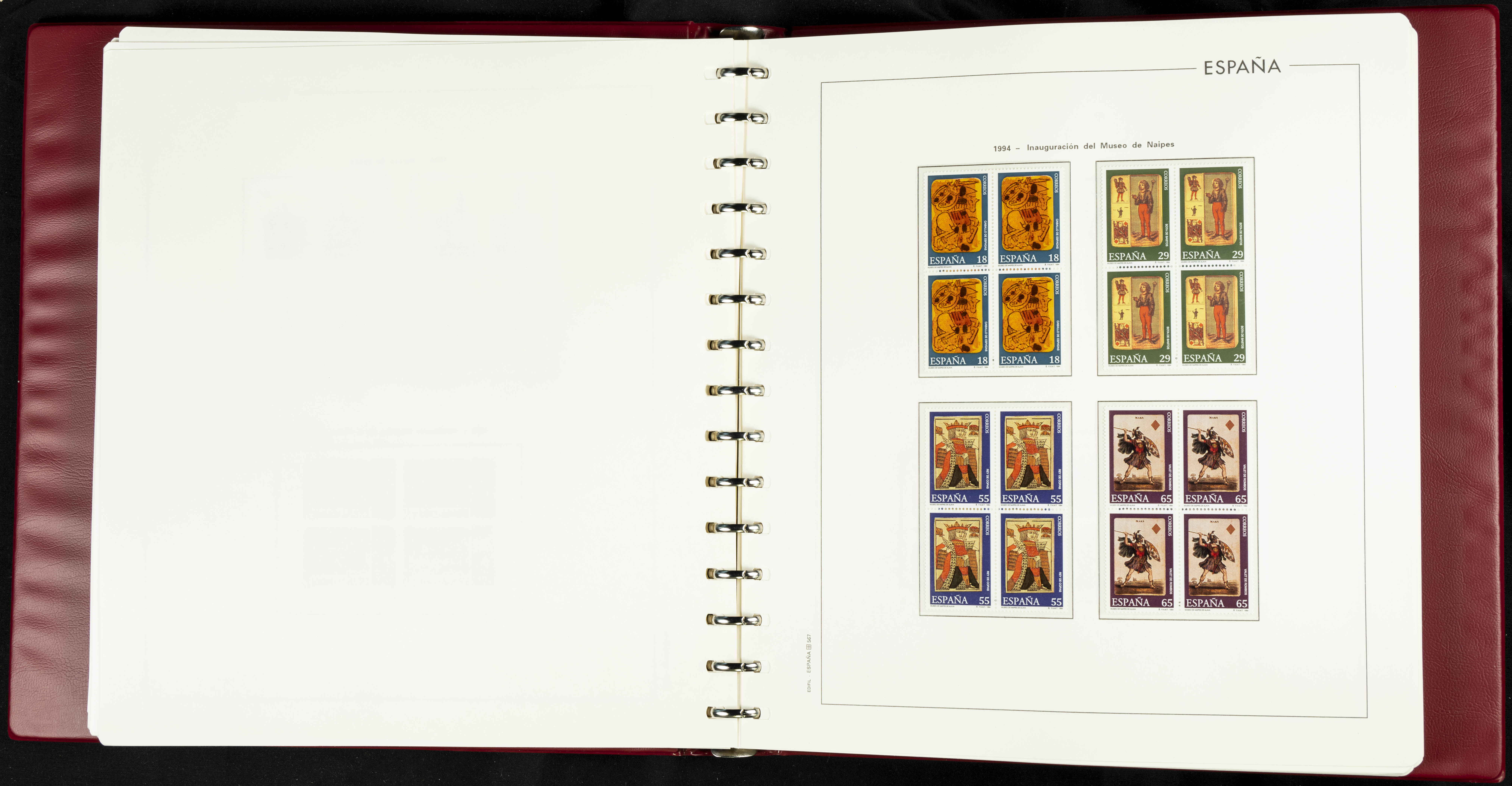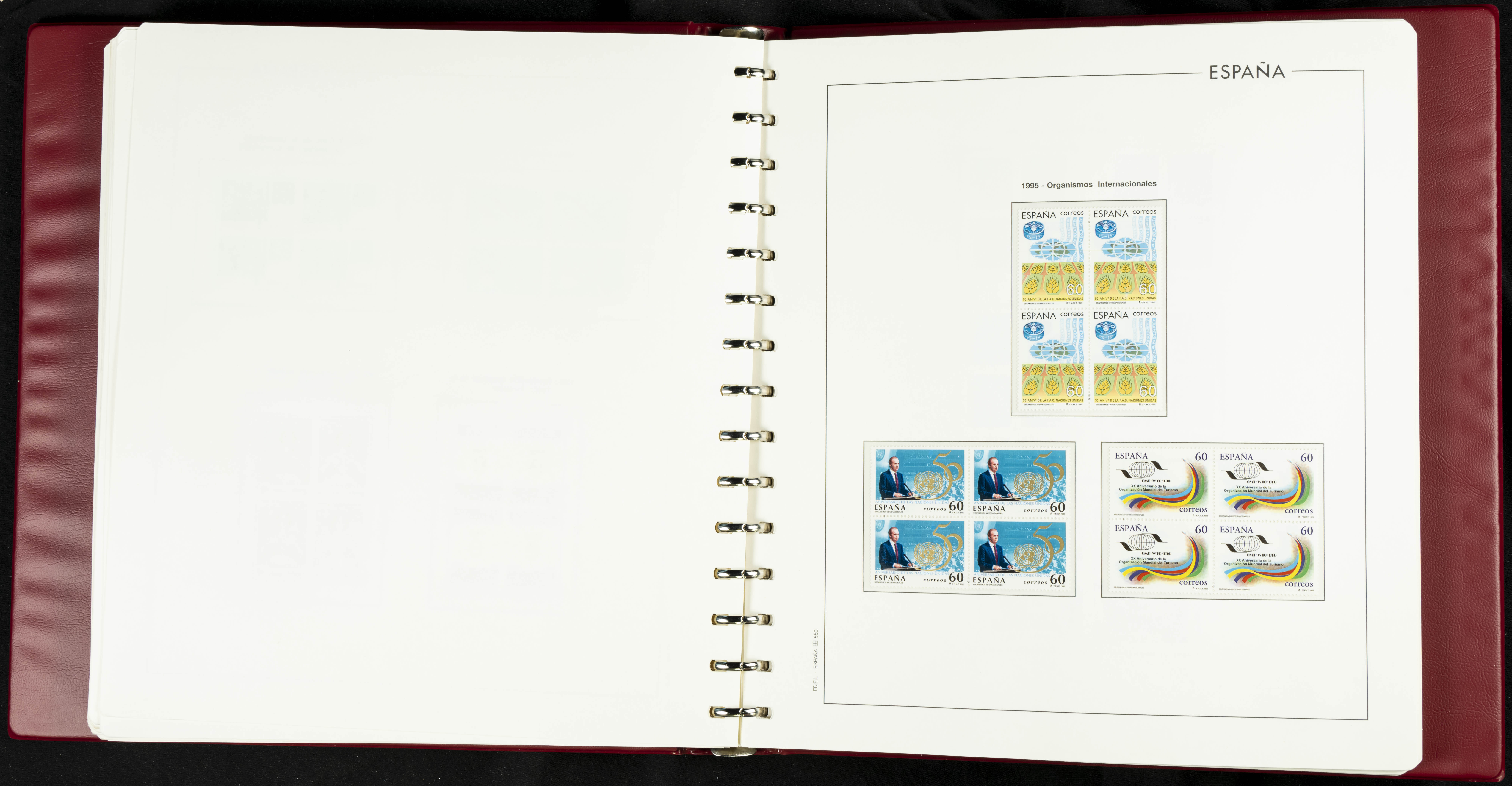 ★★(1976ca). Complete collection between 1976 and 1999, including the 2000 portion denominated exclusively in pesetas, in blocks of four (with a souvenir sheet), in mint condition (mounted in albums). HIGH CATALOGUE VALUE. TO BE EXAMINED.
