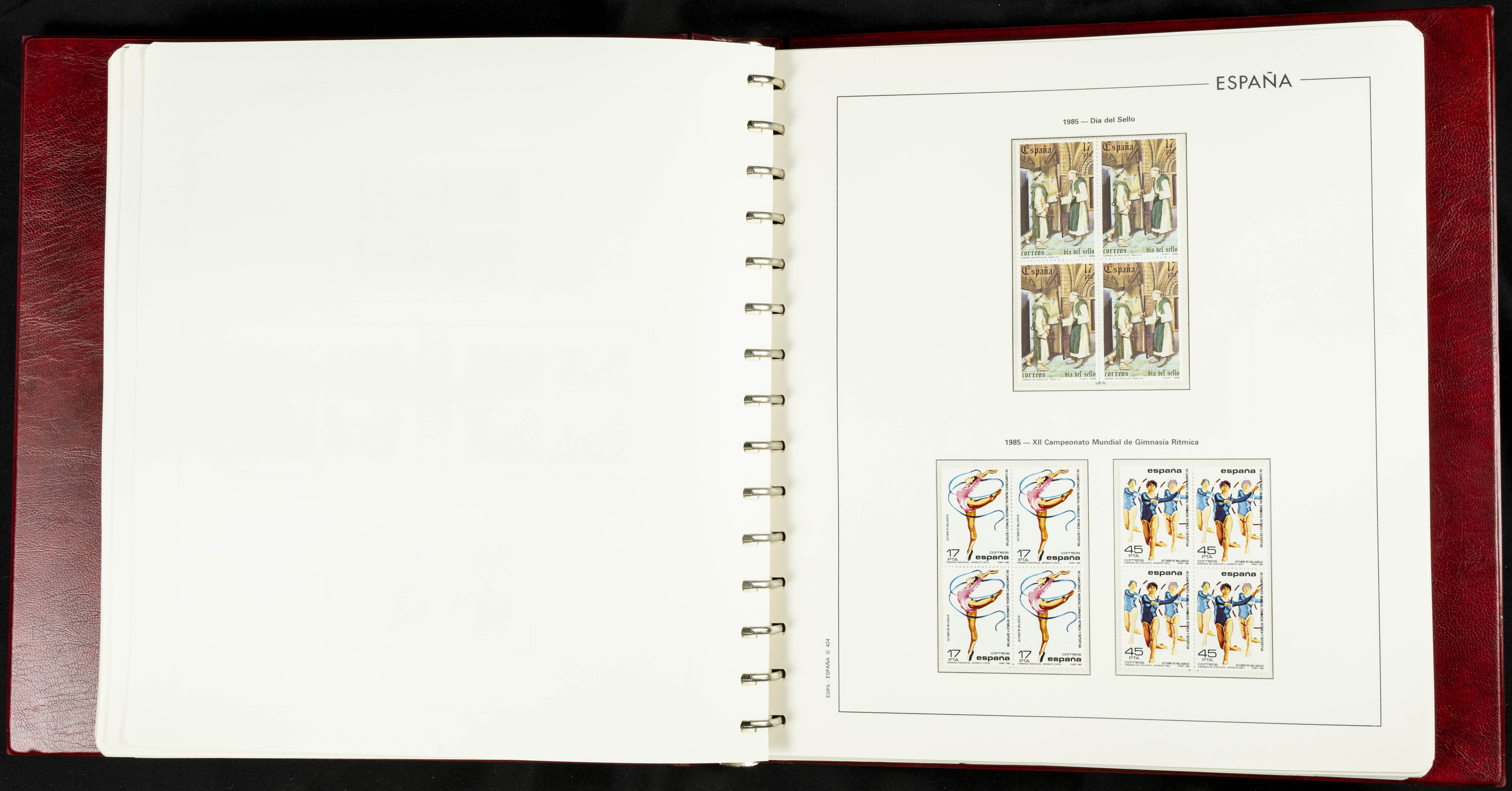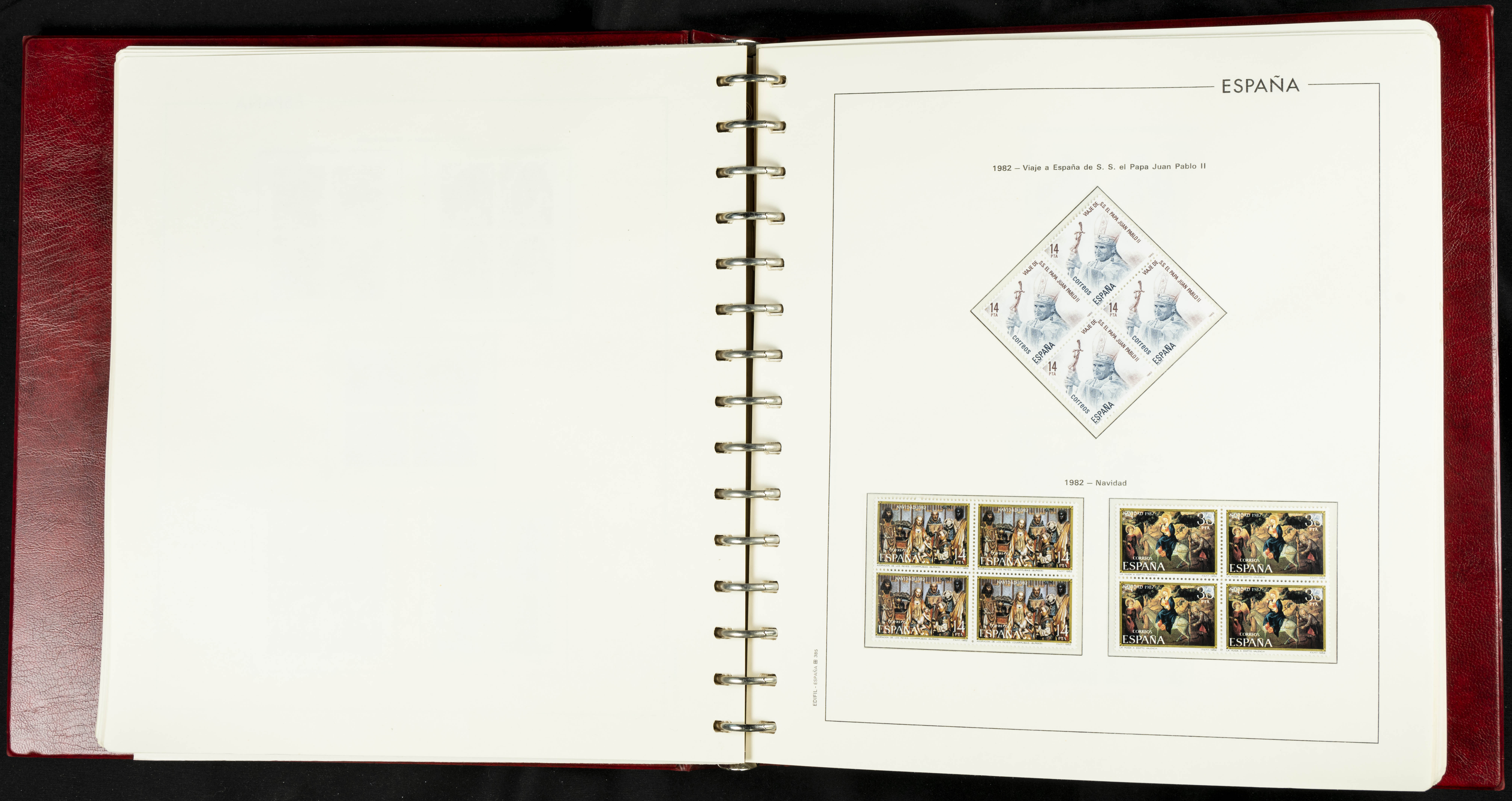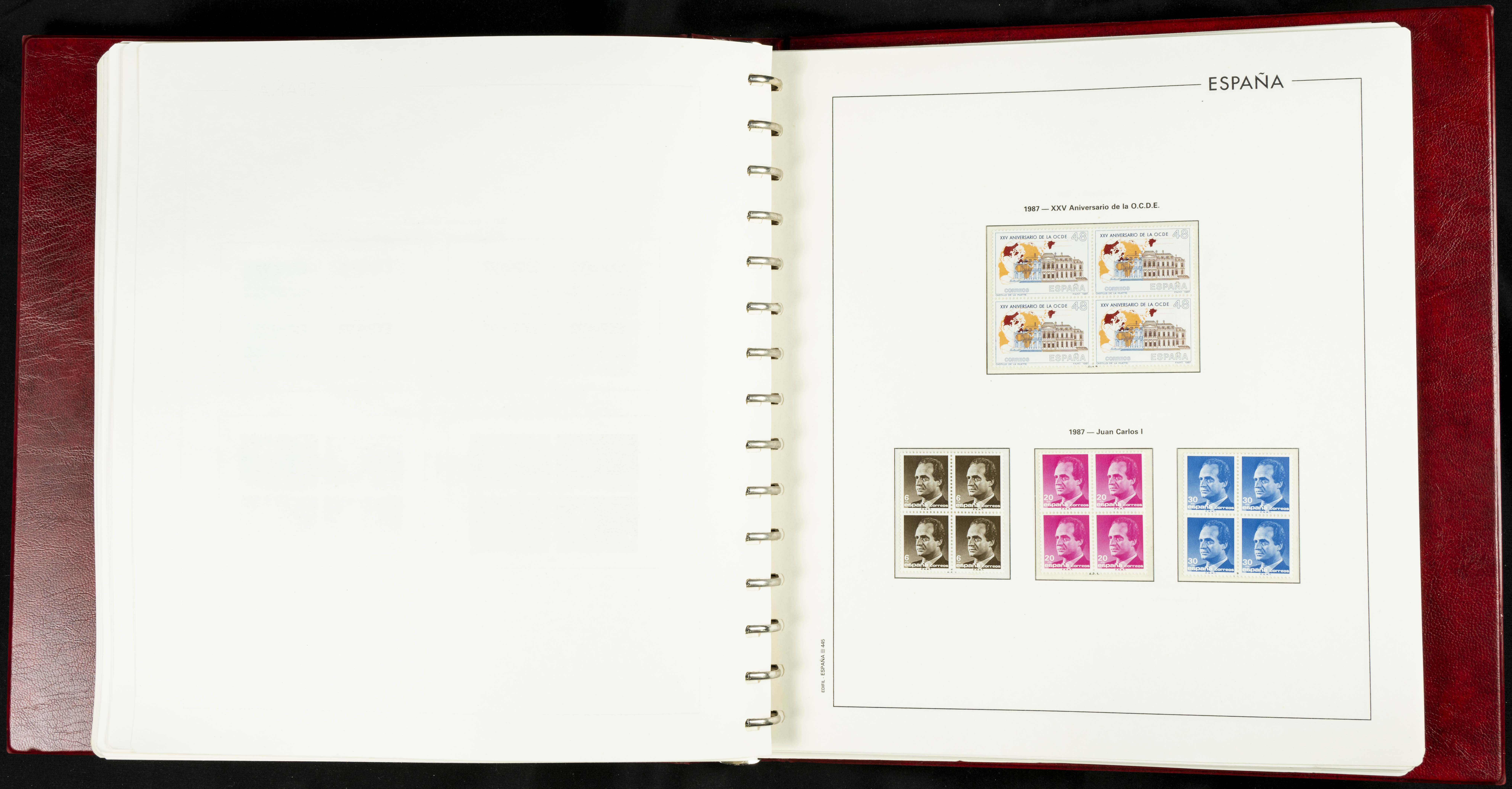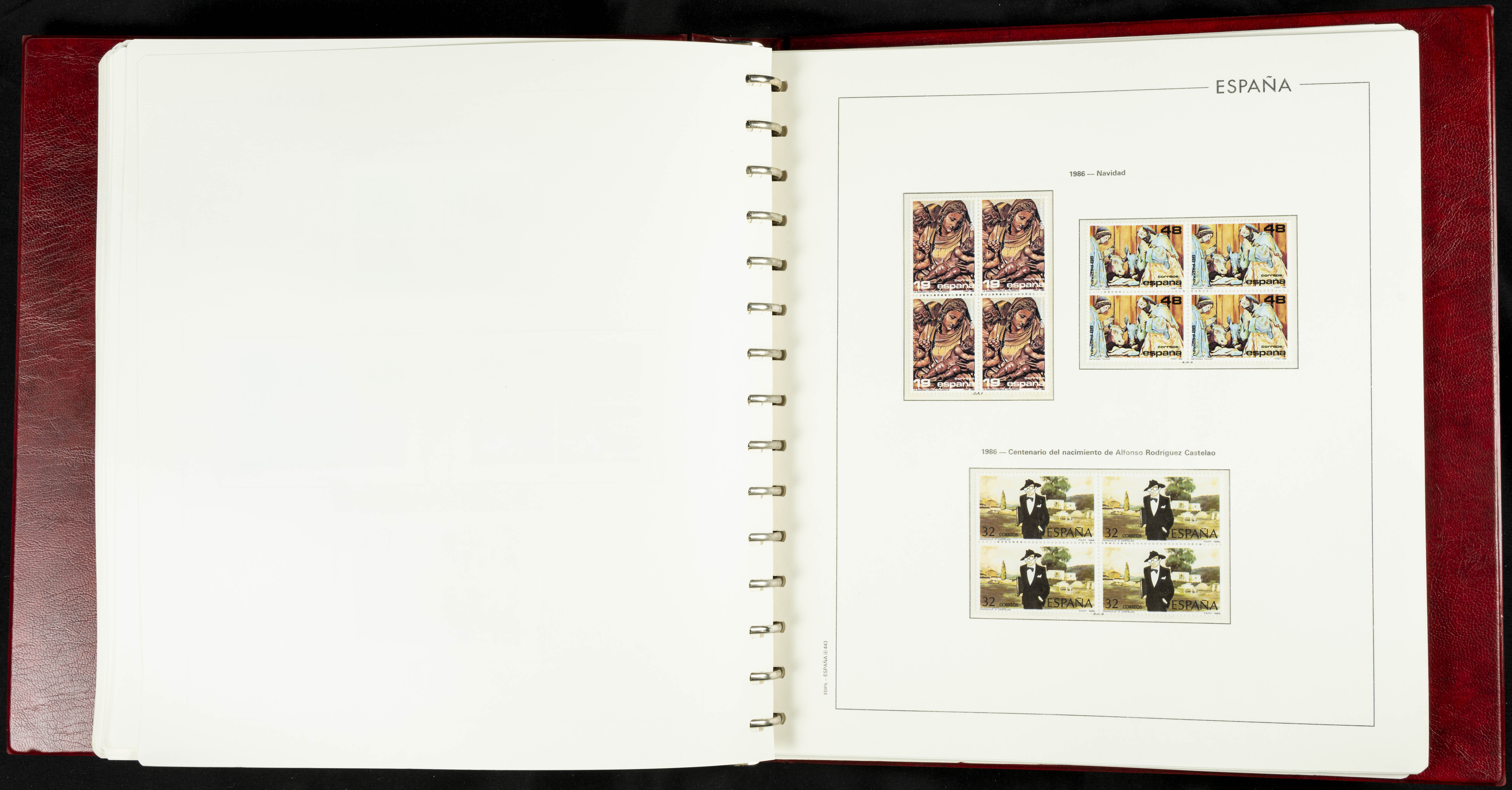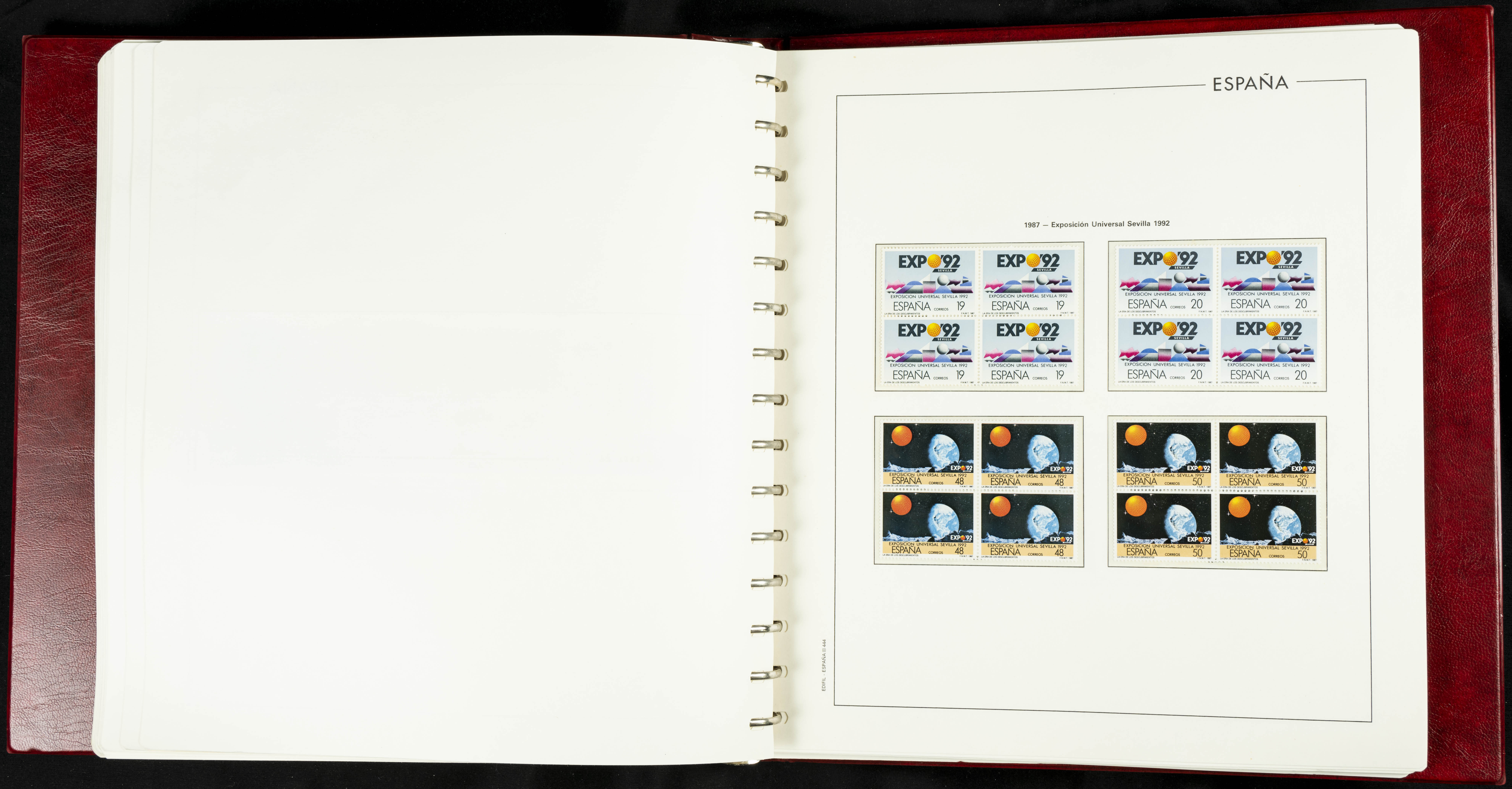 ★★(1976ca). Complete collection between 1976 and 1999, including the 2000 portion denominated exclusively in pesetas, in blocks of four (with a souvenir sheet), in mint condition (mounted in albums). HIGH CATALOGUE VALUE. TO BE EXAMINED.
