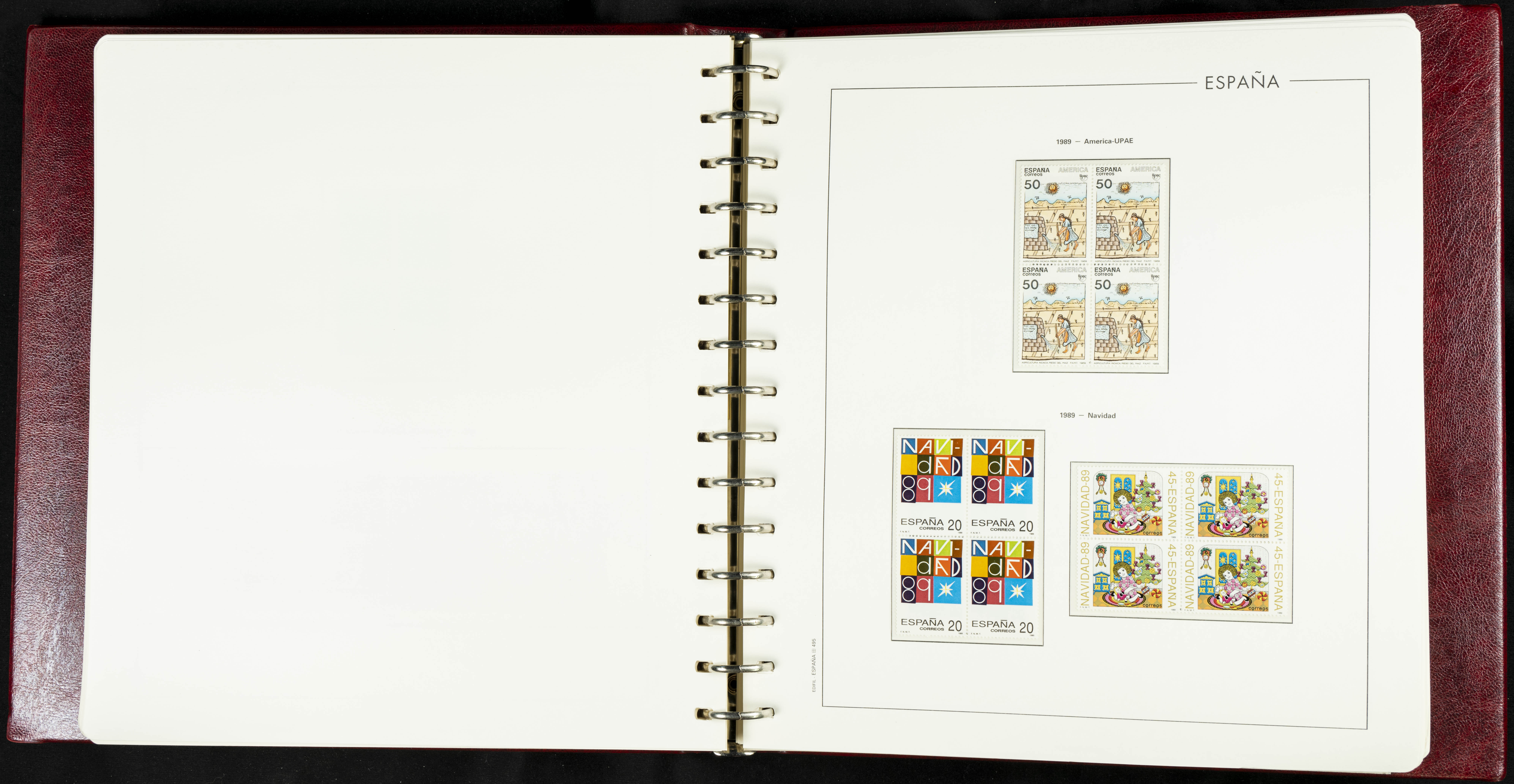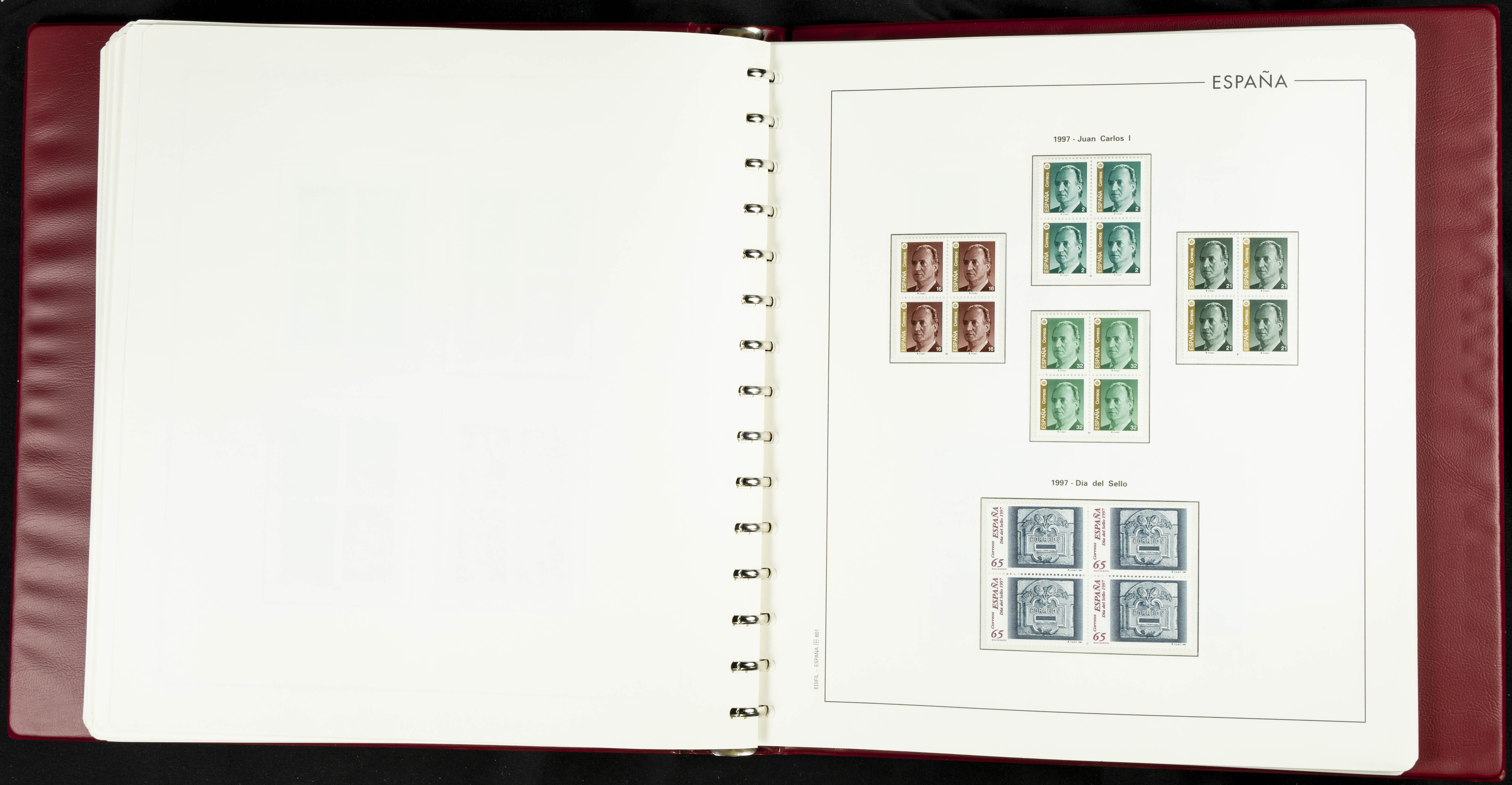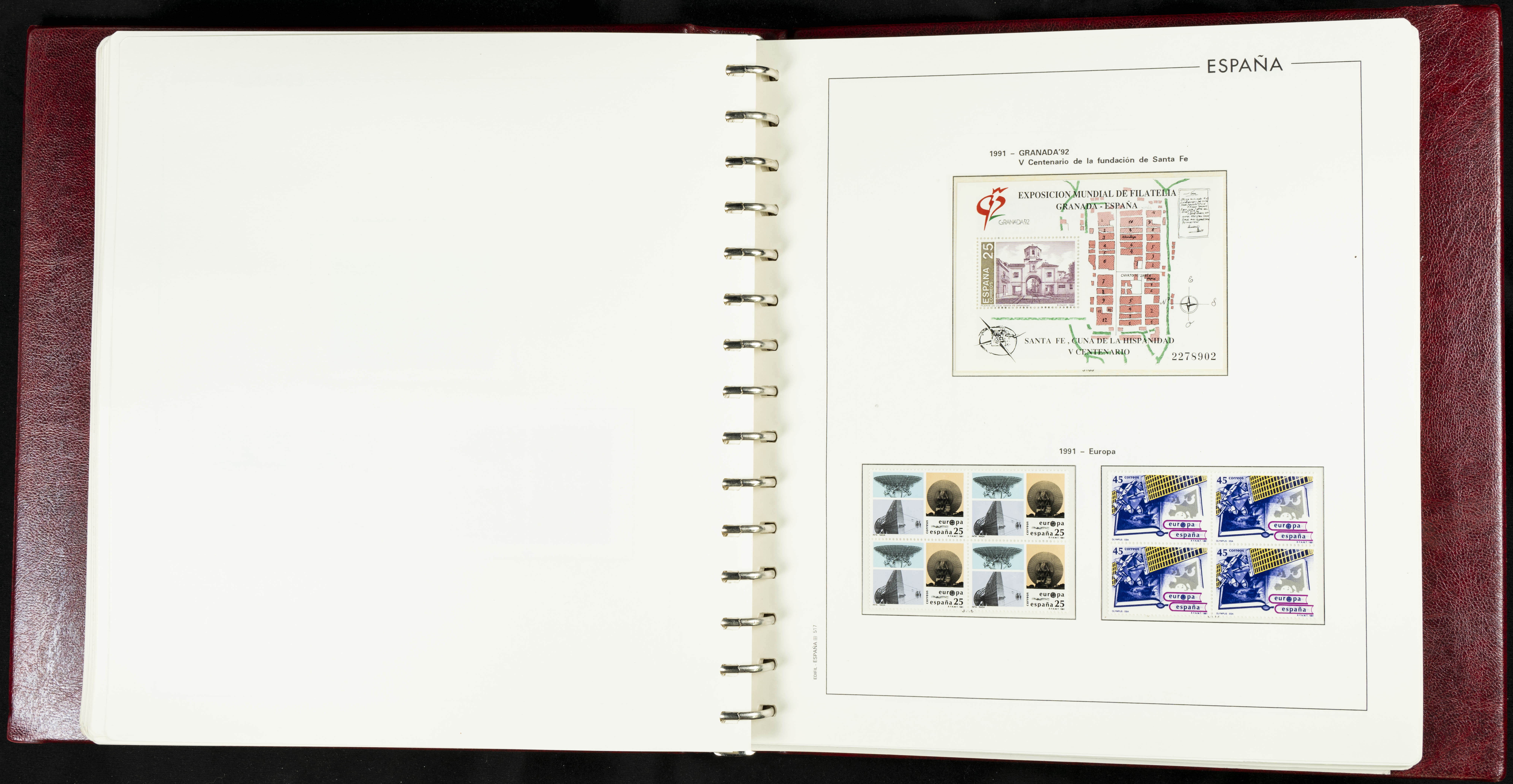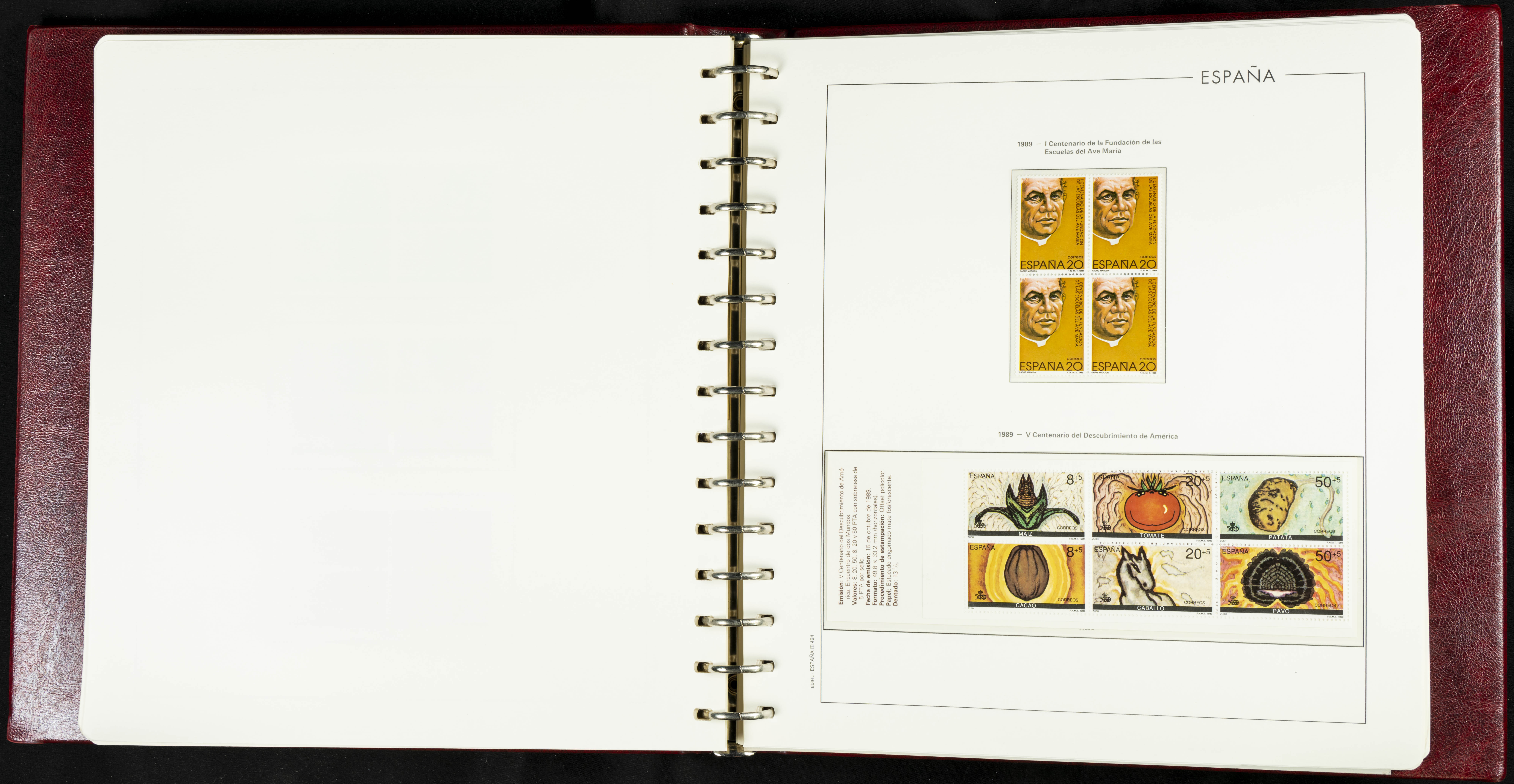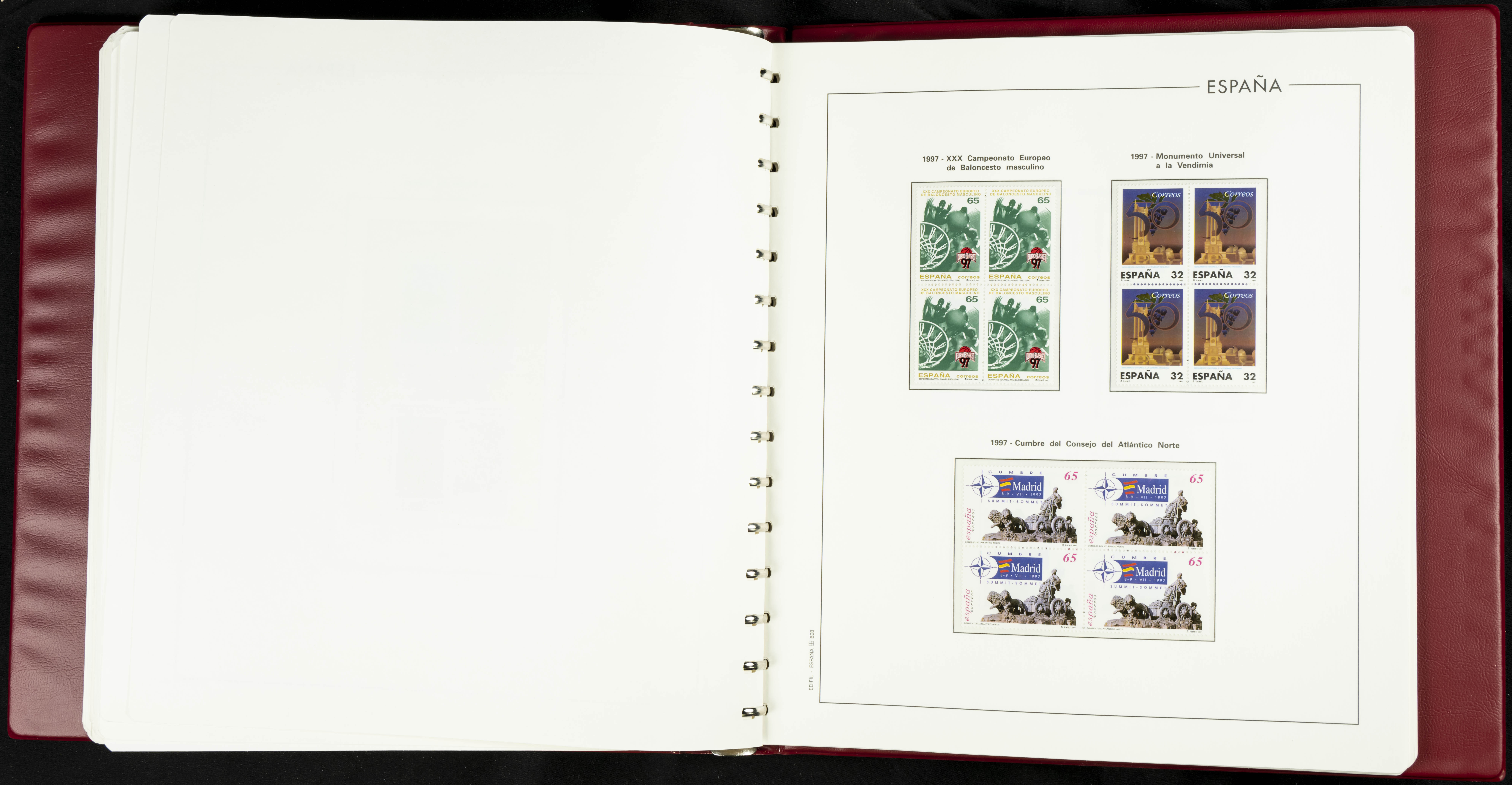 ★★(1976ca). Complete collection between 1976 and 1999, including the 2000 portion denominated exclusively in pesetas, in blocks of four (with a souvenir sheet), in mint condition (mounted in albums). HIGH CATALOGUE VALUE. TO BE EXAMINED.