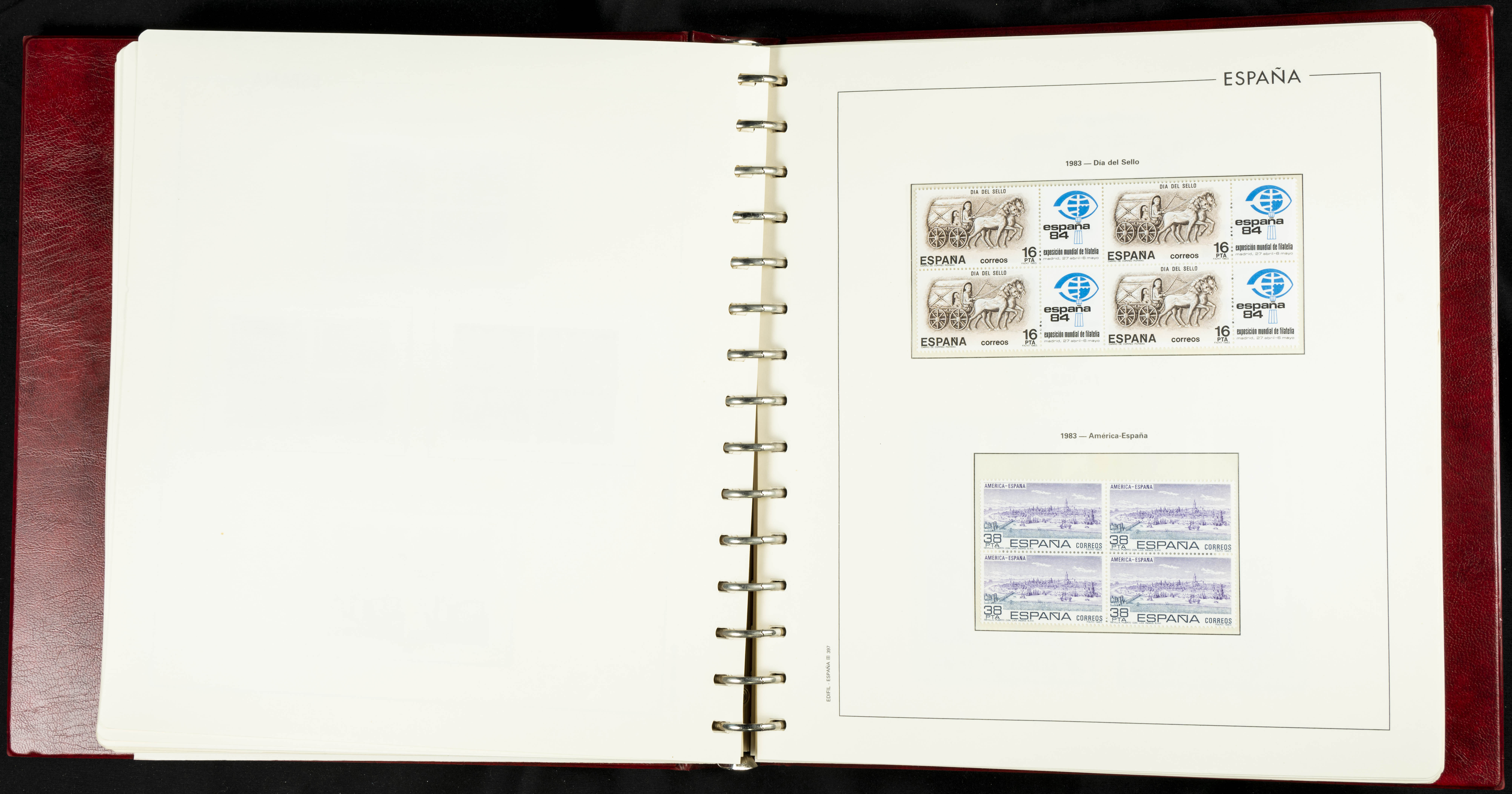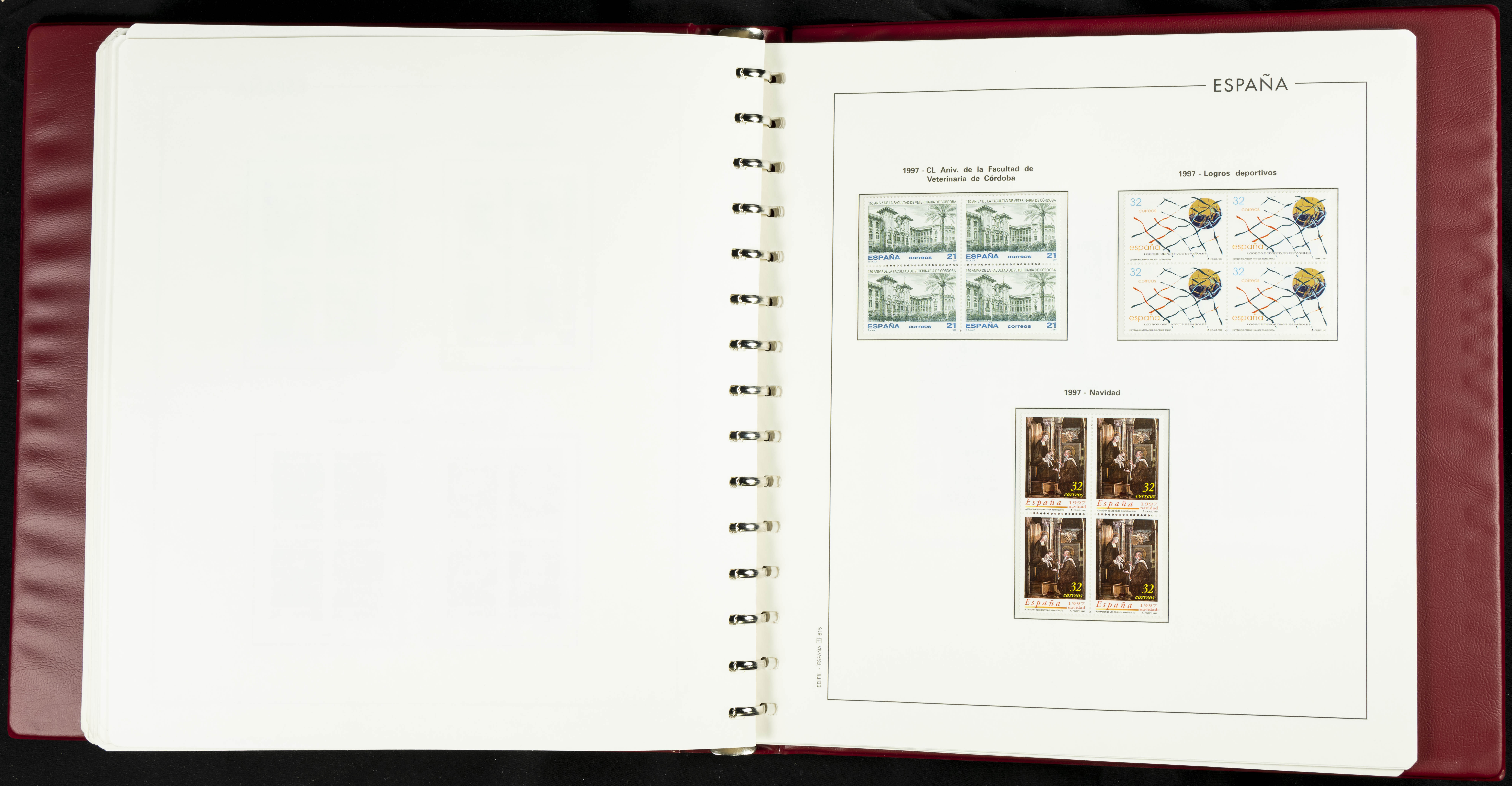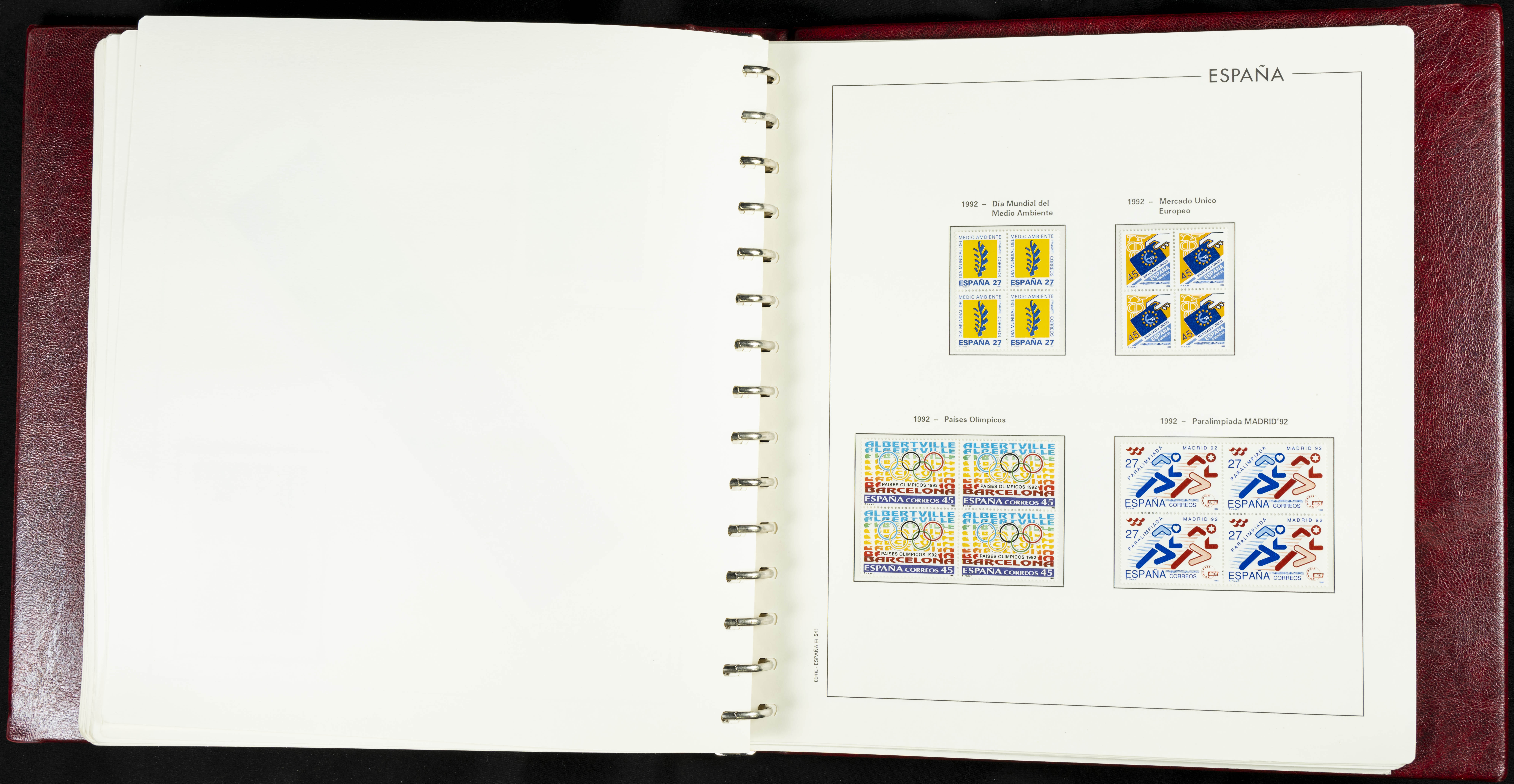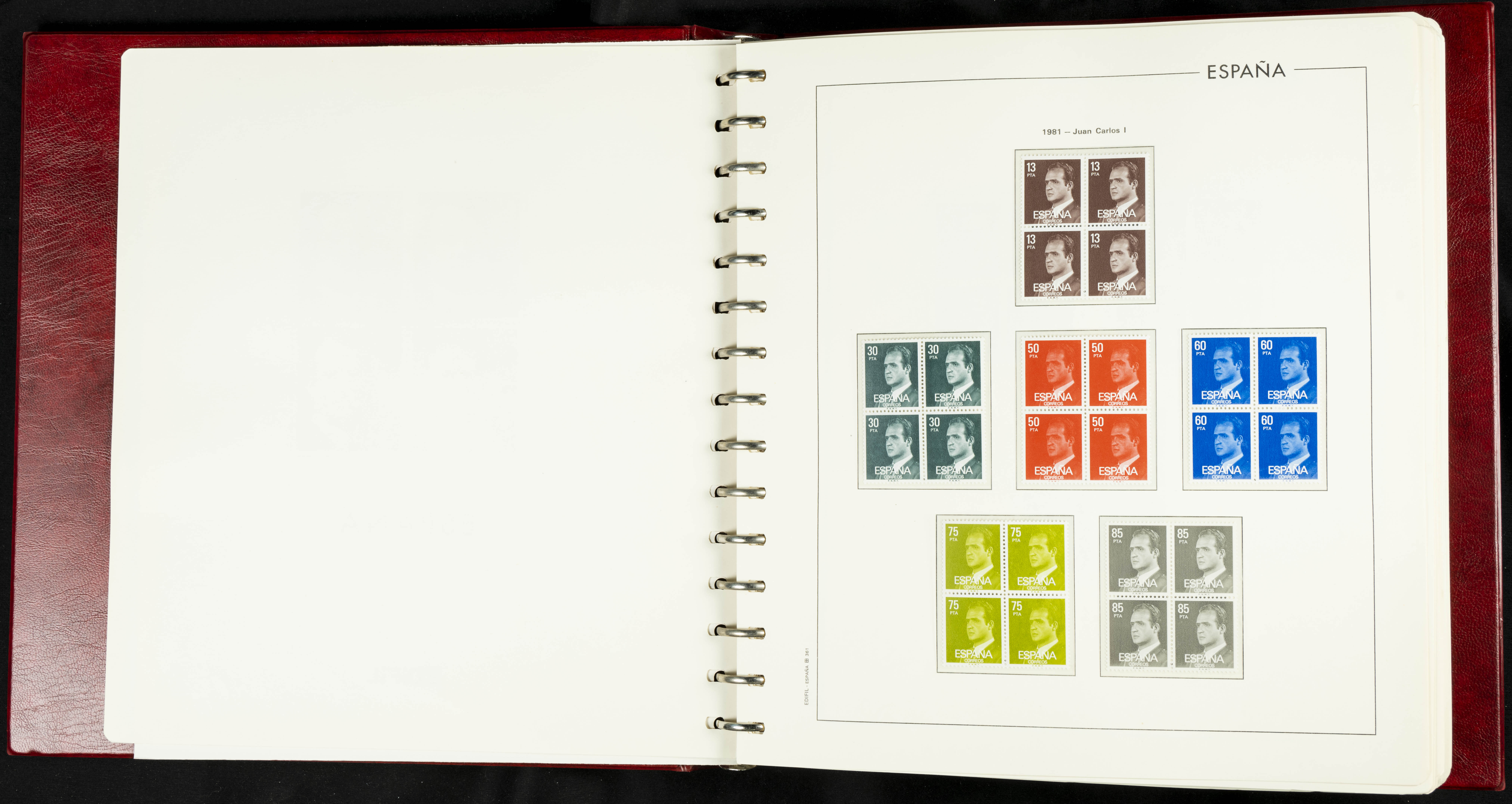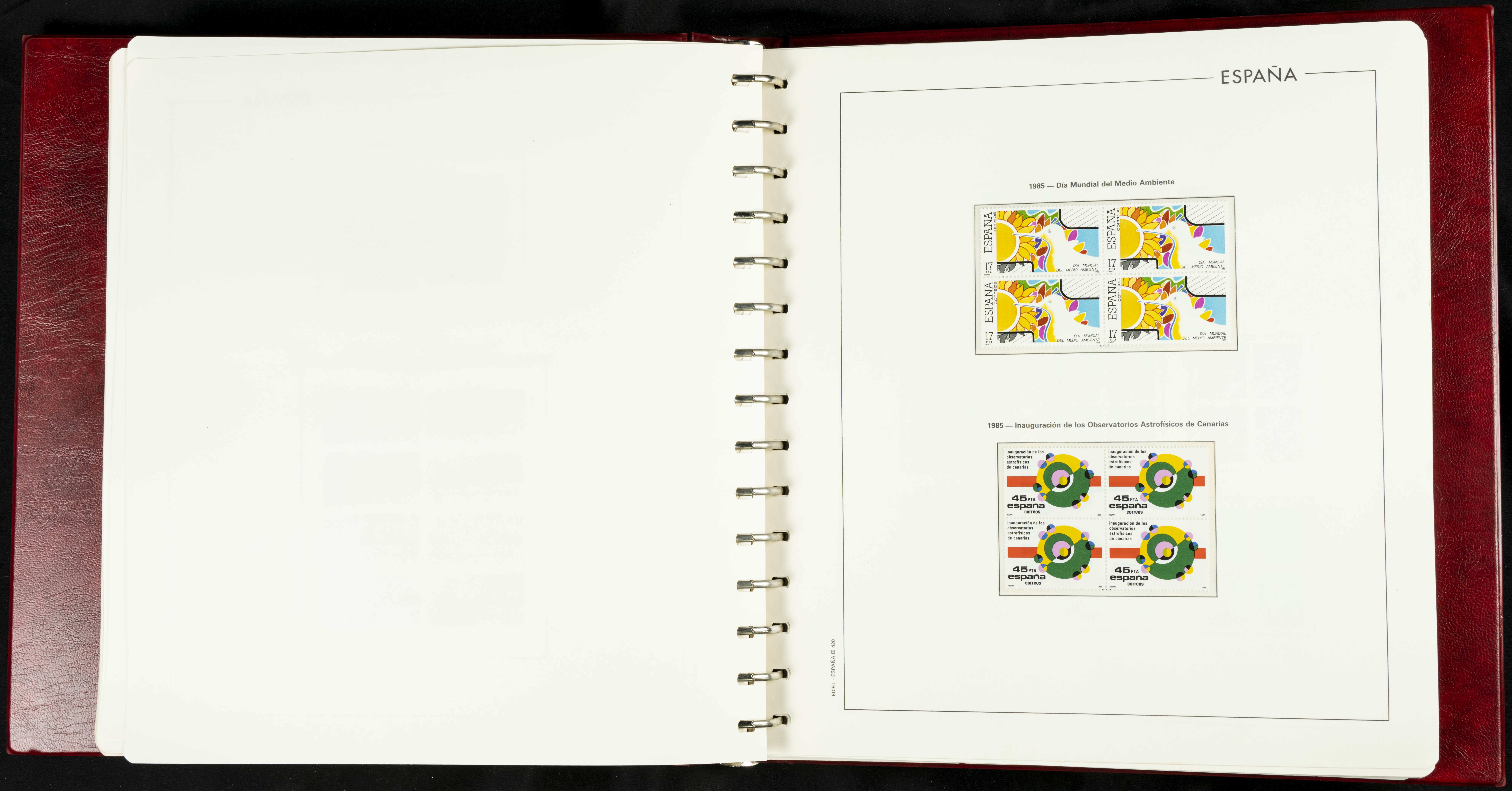 ★★(1976ca). Complete collection between 1976 and 1999, including the 2000 portion denominated exclusively in pesetas, in blocks of four (with a souvenir sheet), in mint condition (mounted in albums). HIGH CATALOGUE VALUE. TO BE EXAMINED.