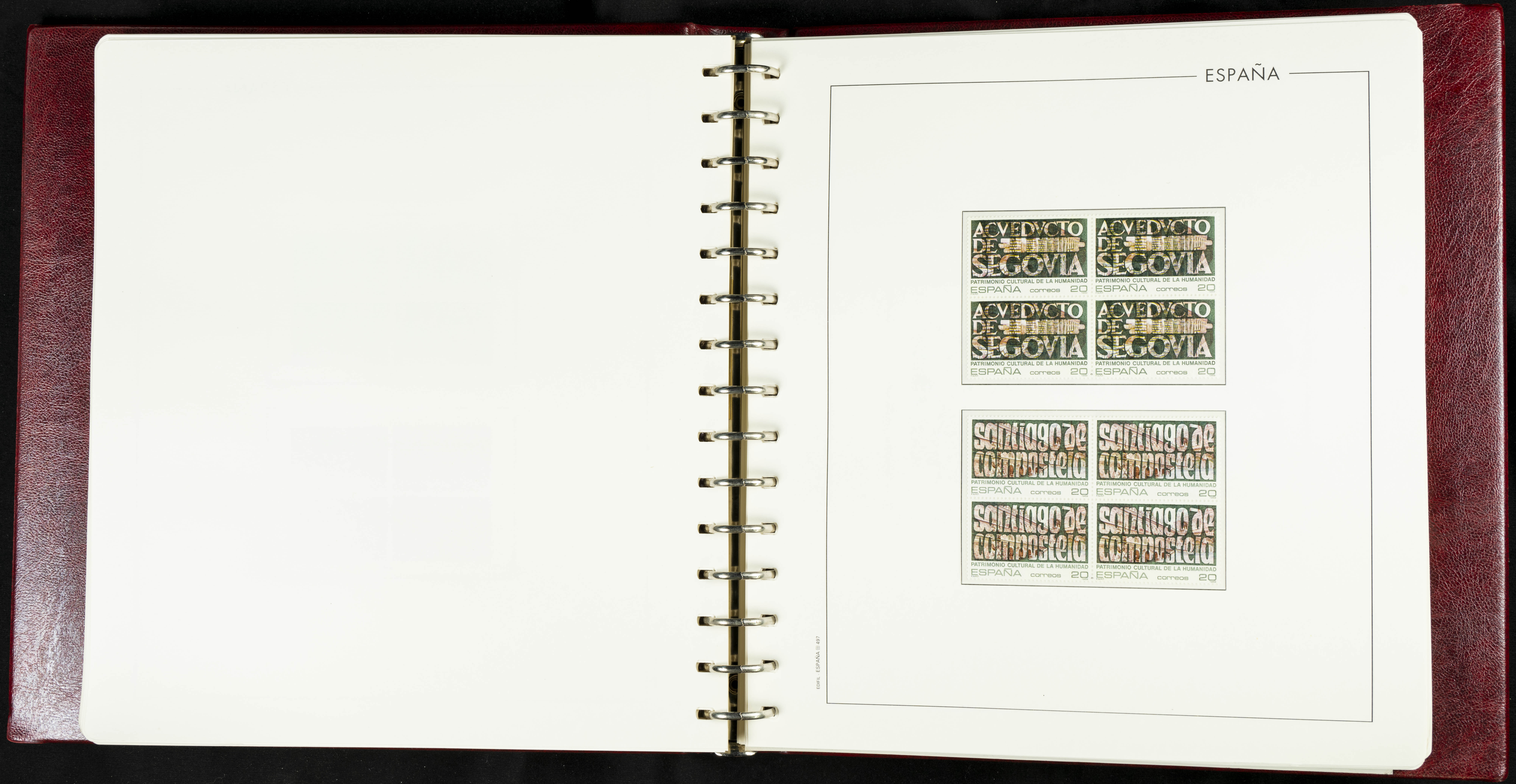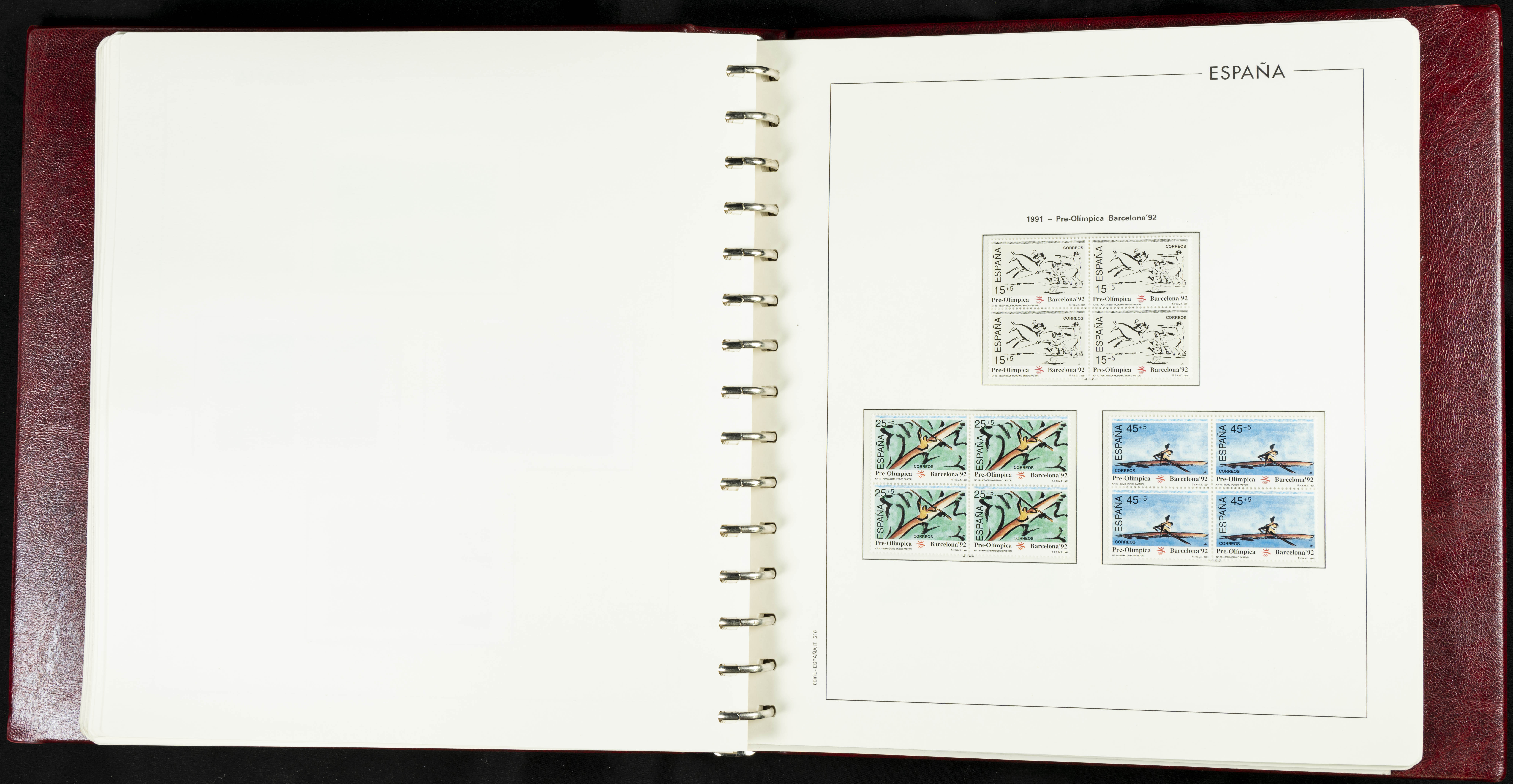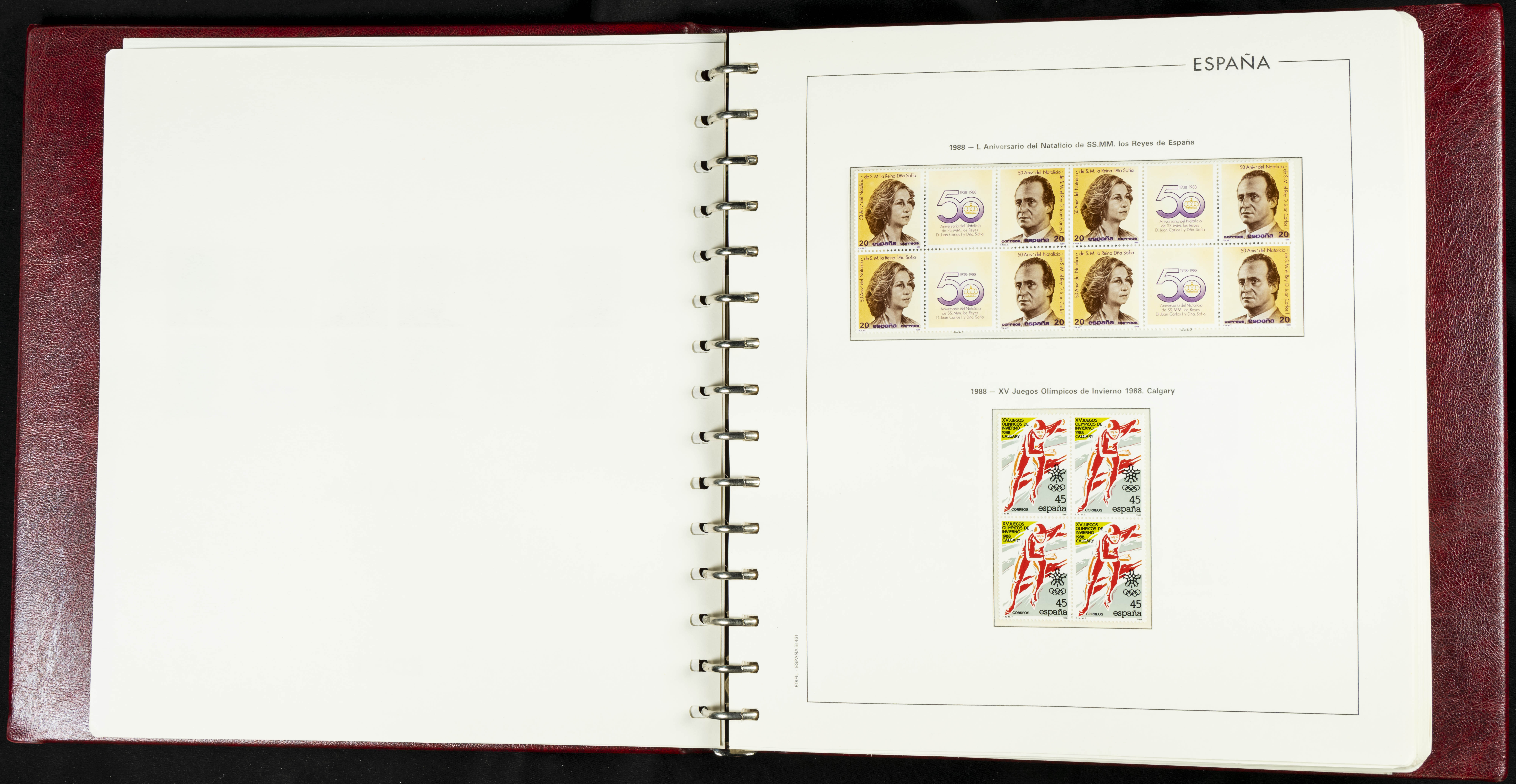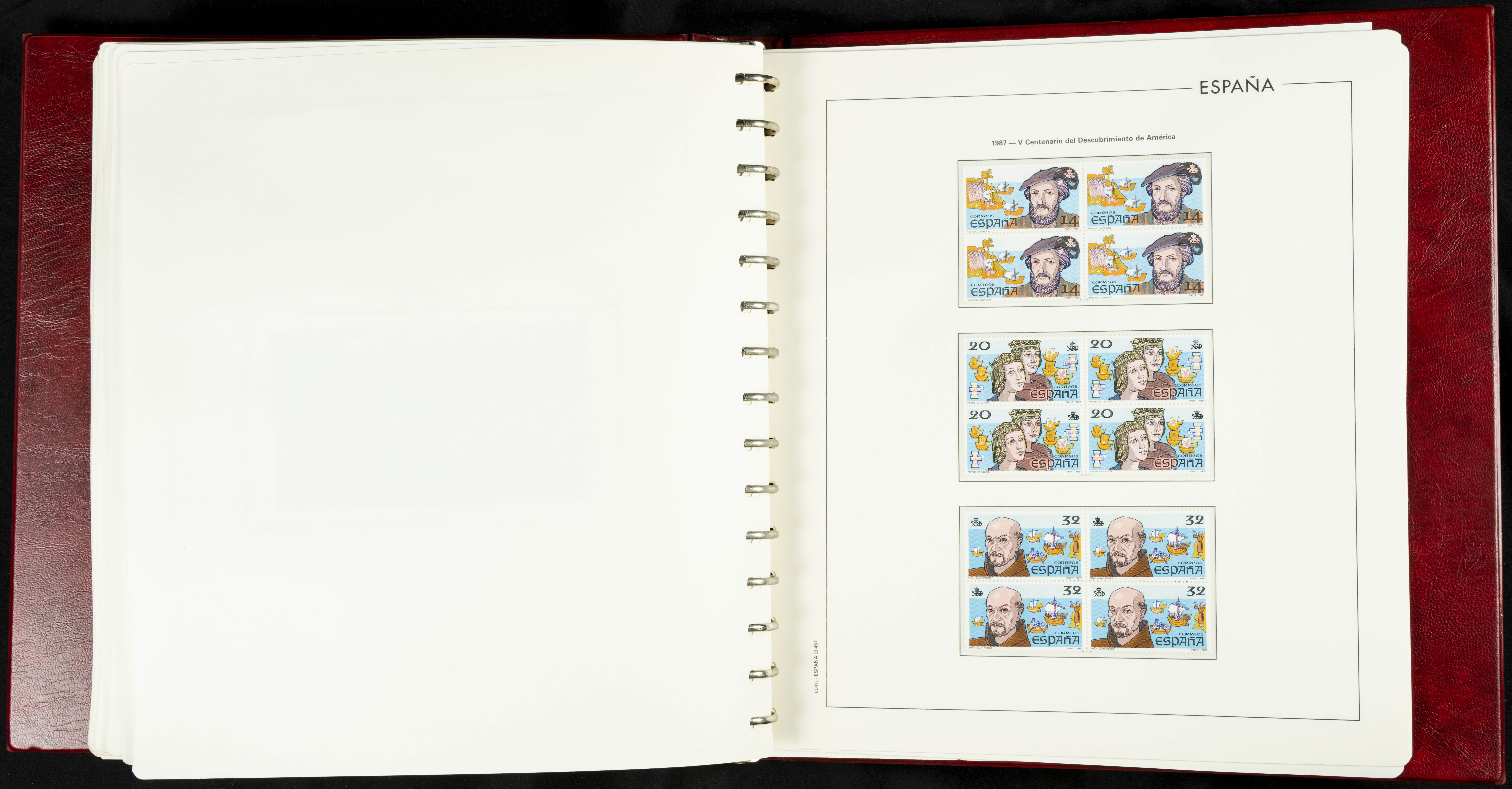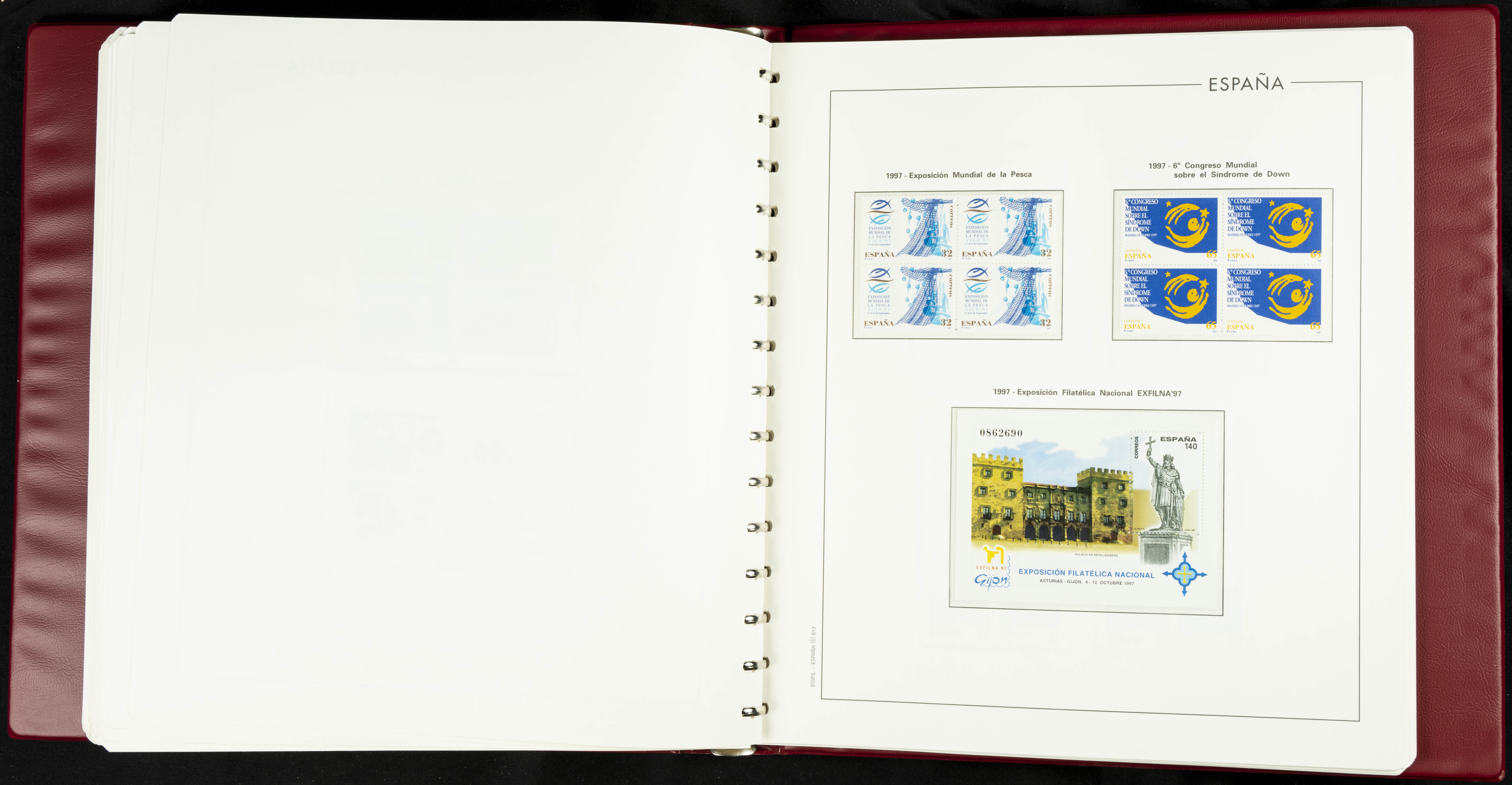 ★★(1976ca). Complete collection between 1976 and 1999, including the 2000 portion denominated exclusively in pesetas, in blocks of four (with a souvenir sheet), in mint condition (mounted in albums). HIGH CATALOGUE VALUE. TO BE EXAMINED.