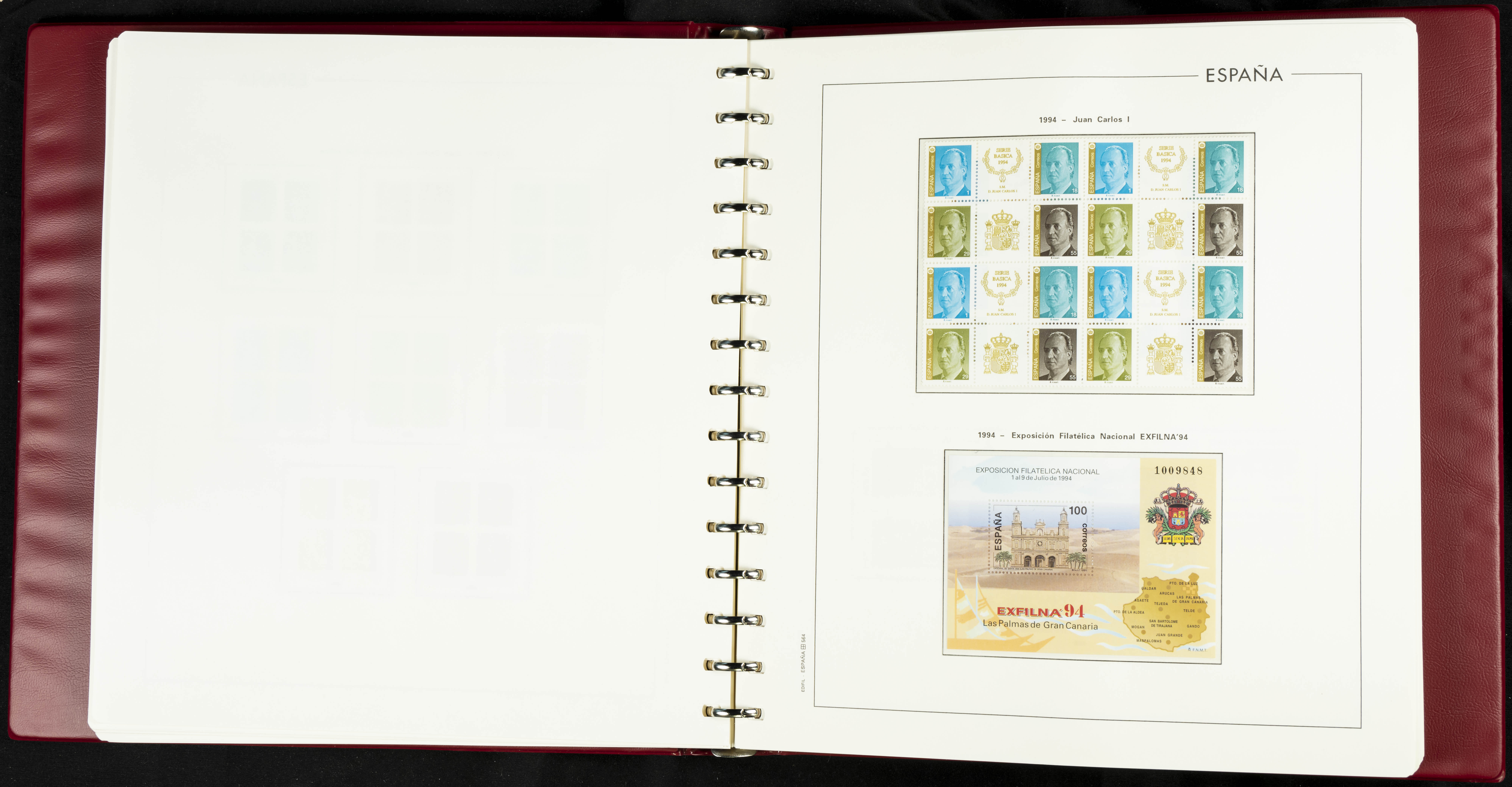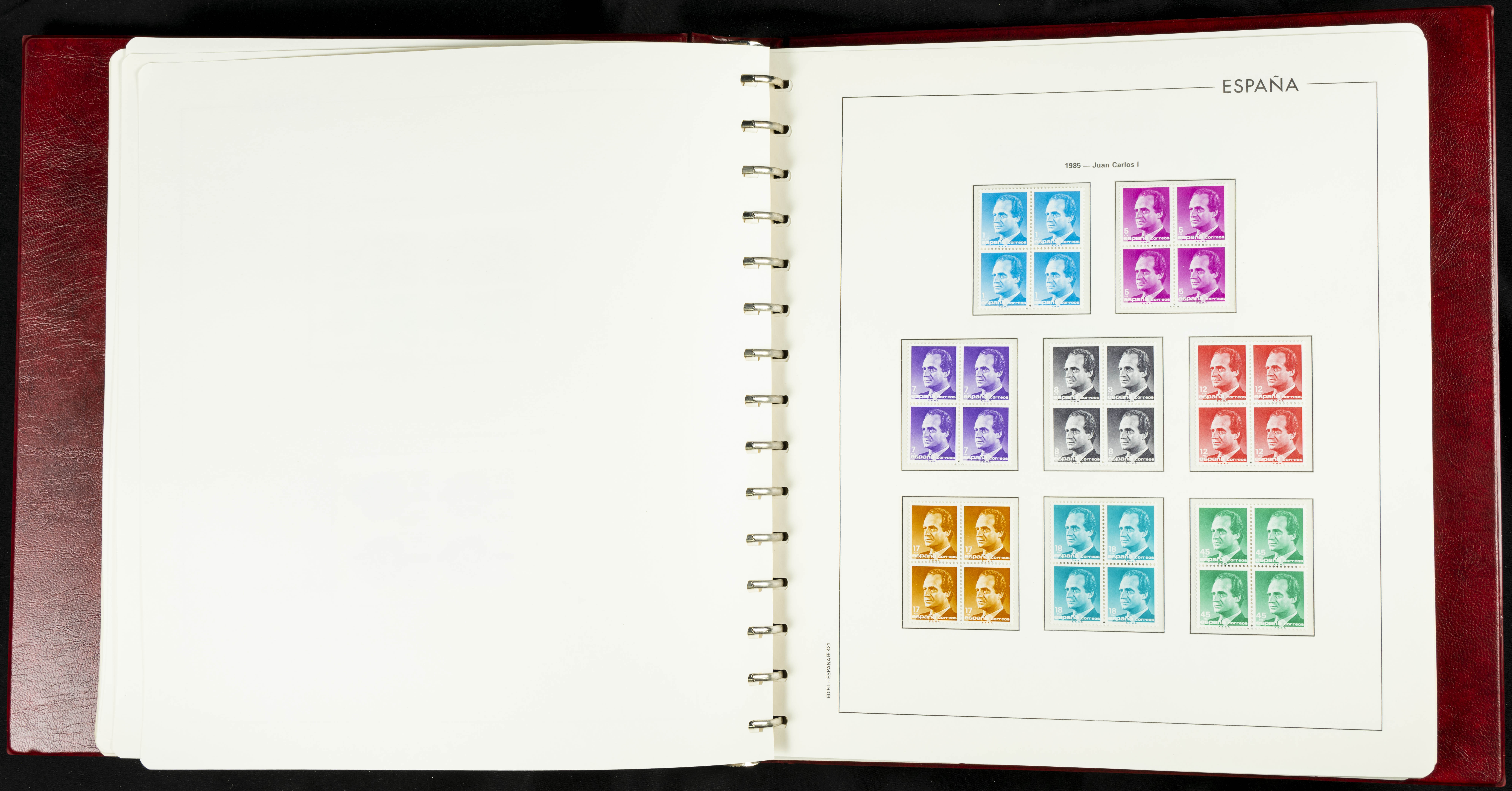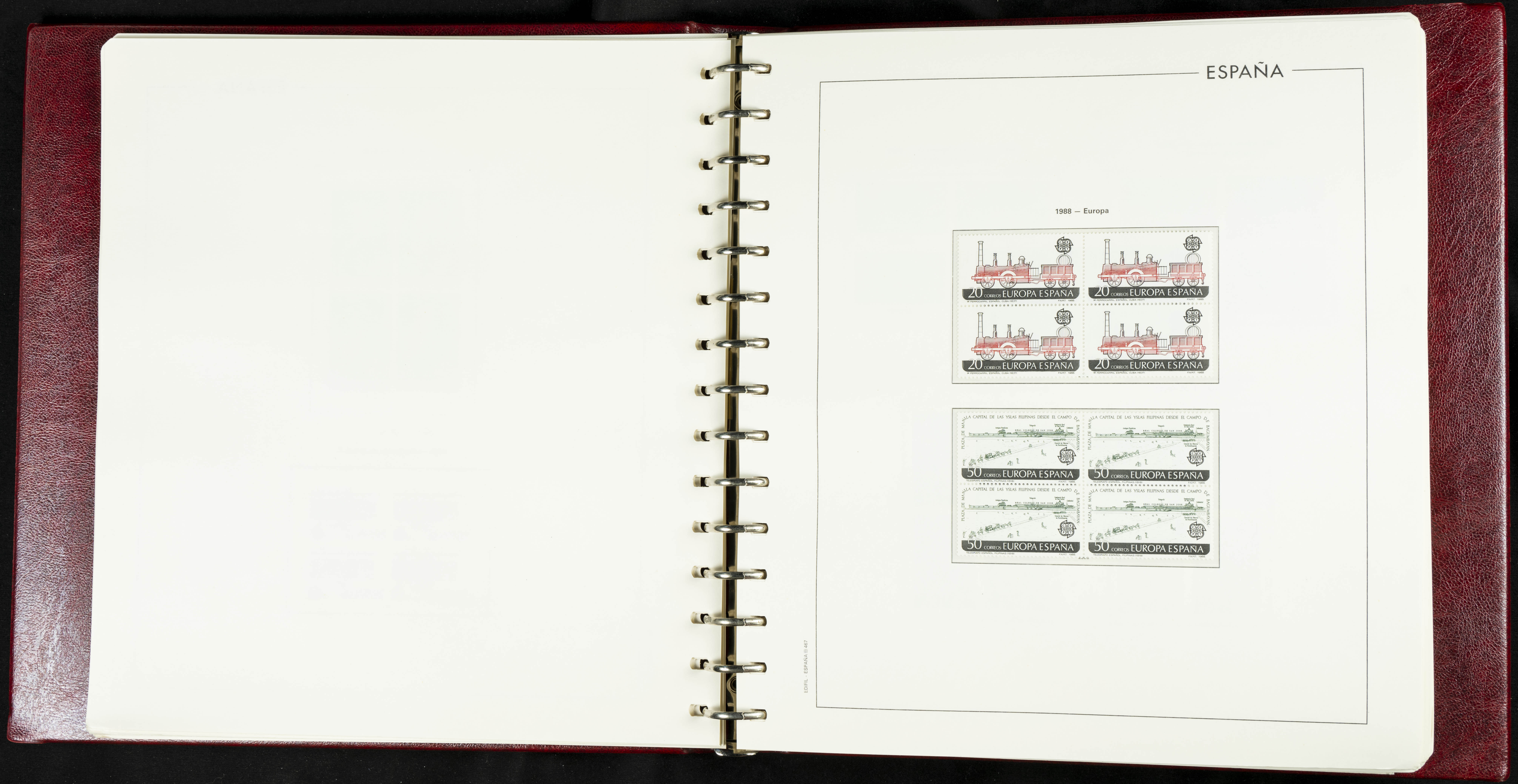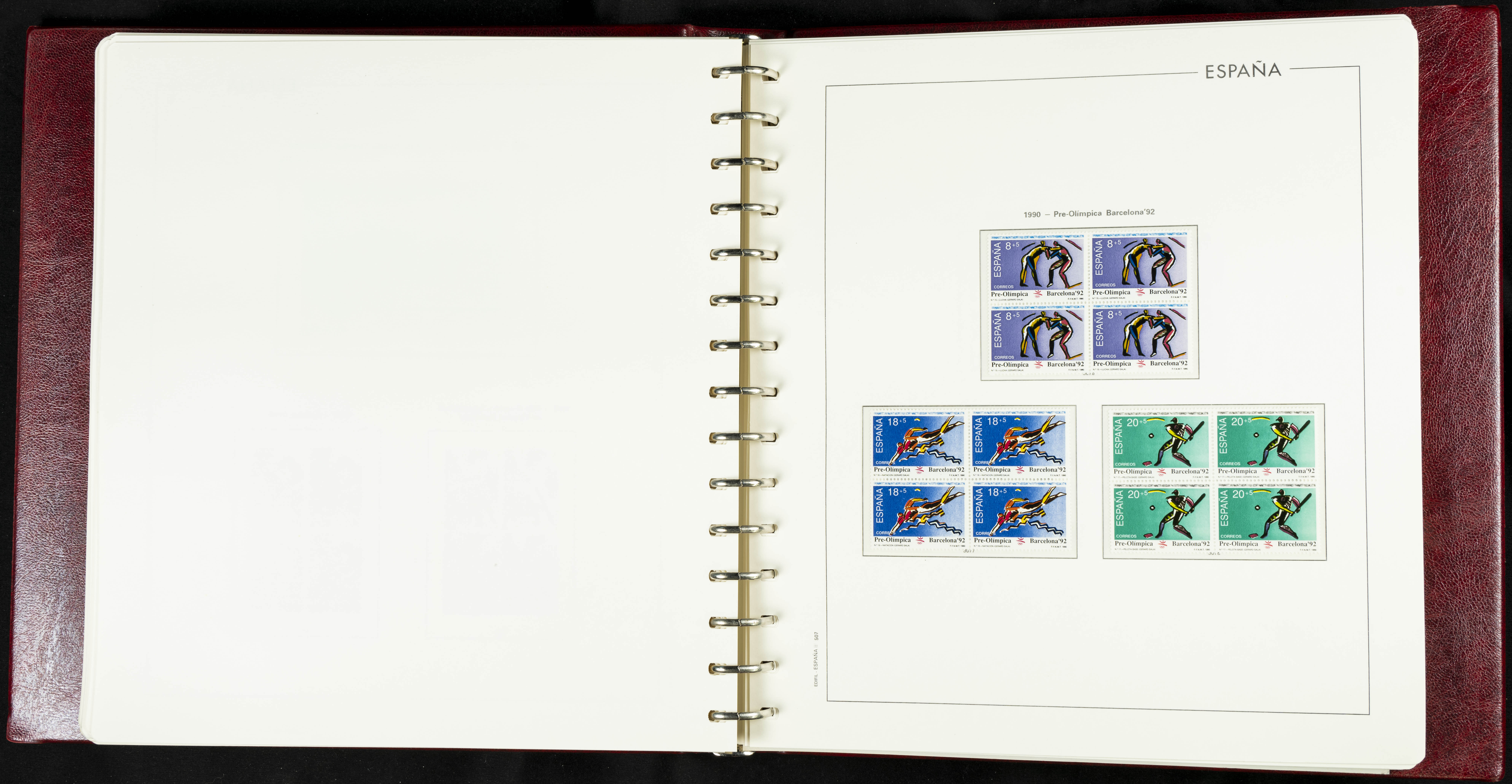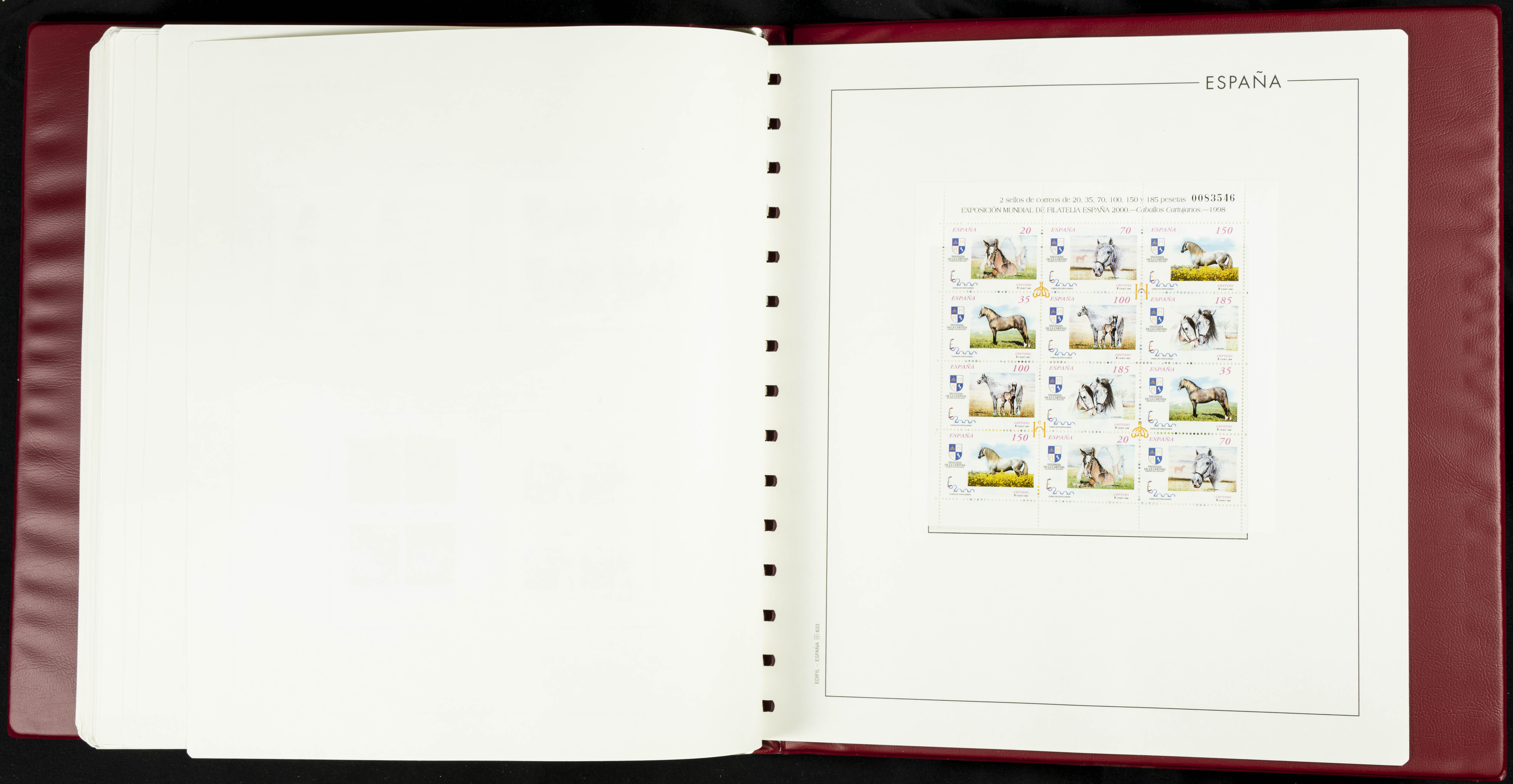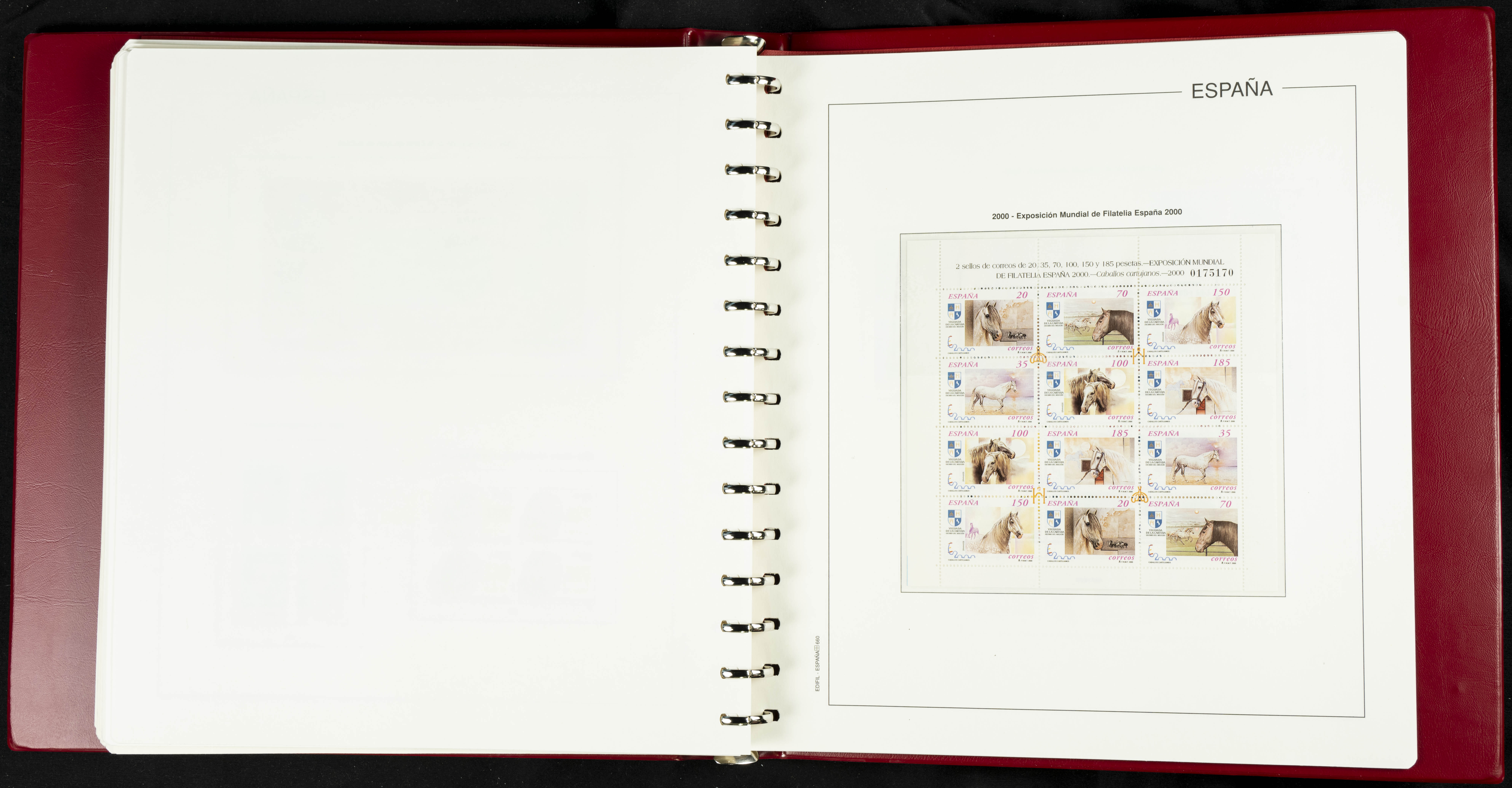 ★★(1976ca). Complete collection between 1976 and 1999, including the 2000 portion denominated exclusively in pesetas, in blocks of four (with a souvenir sheet), in mint condition (mounted in albums). HIGH CATALOGUE VALUE. TO BE EXAMINED.