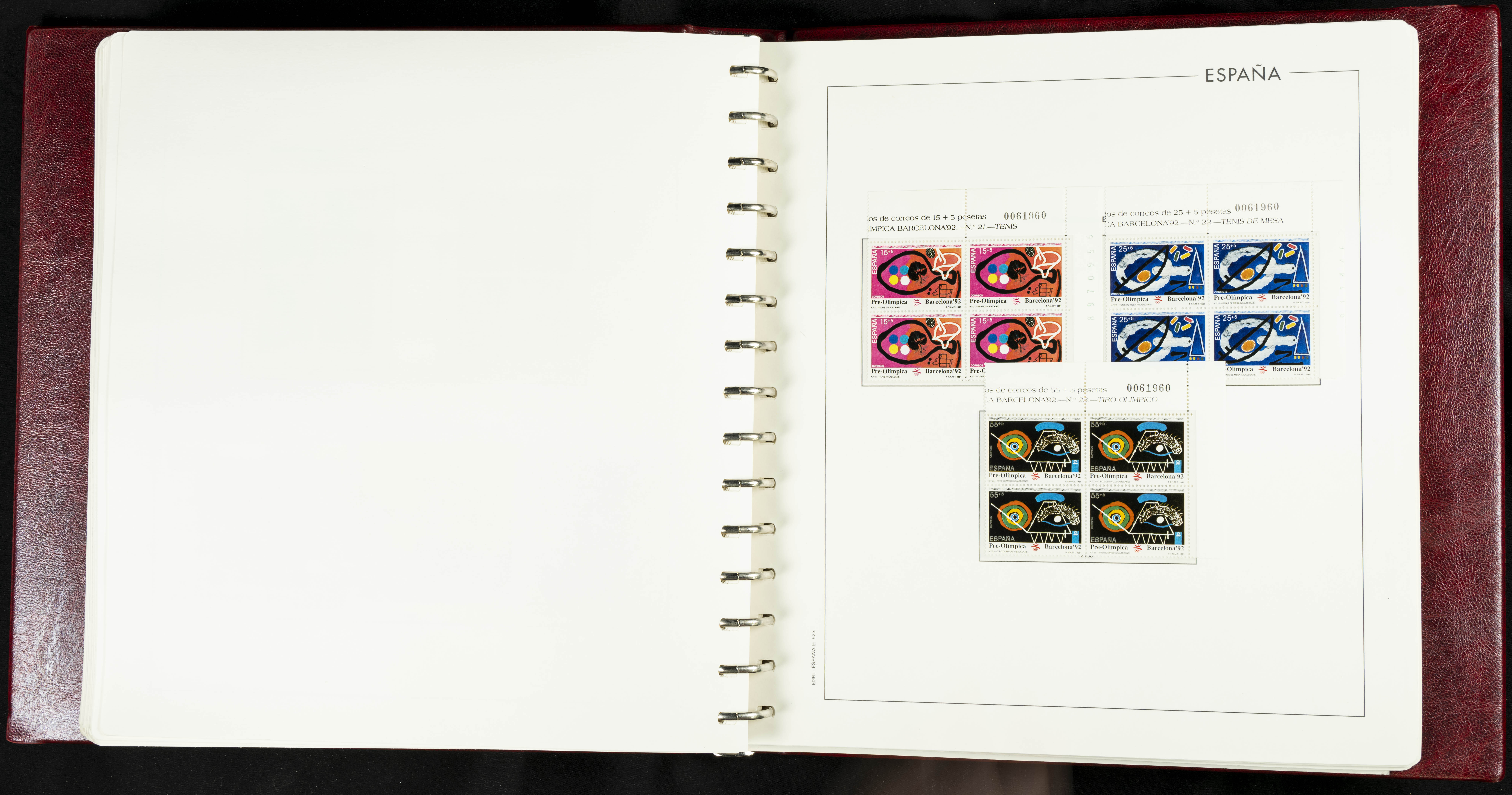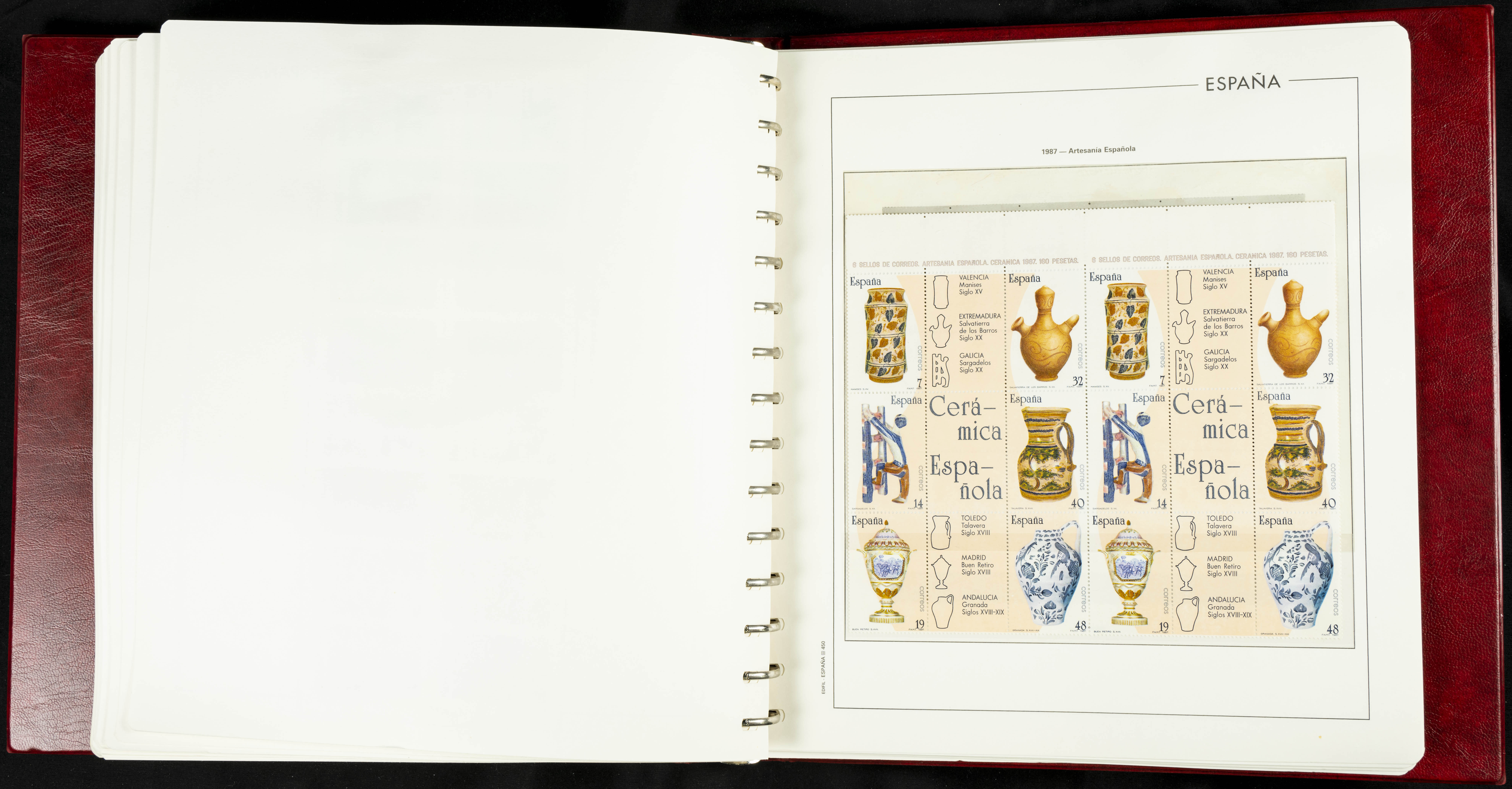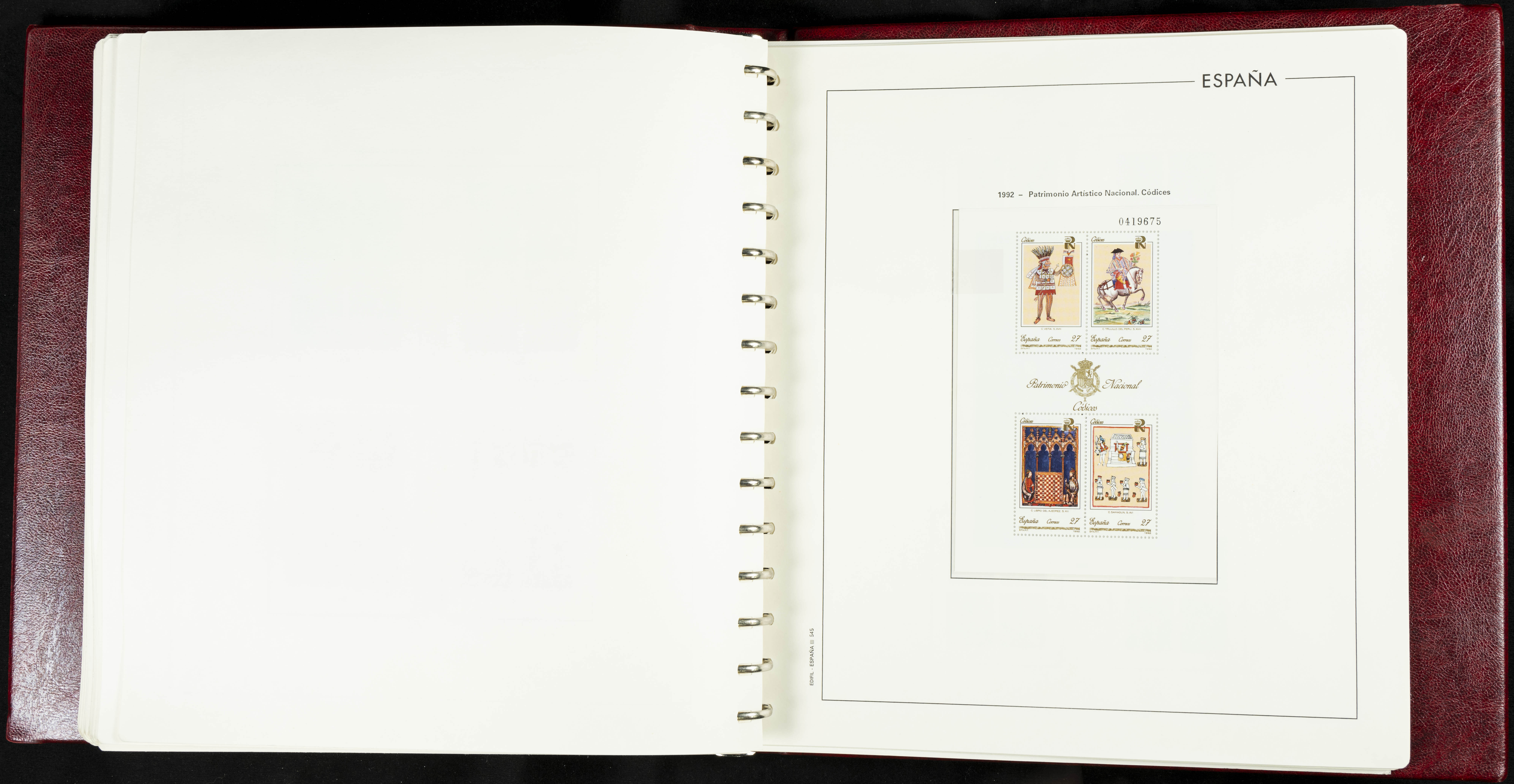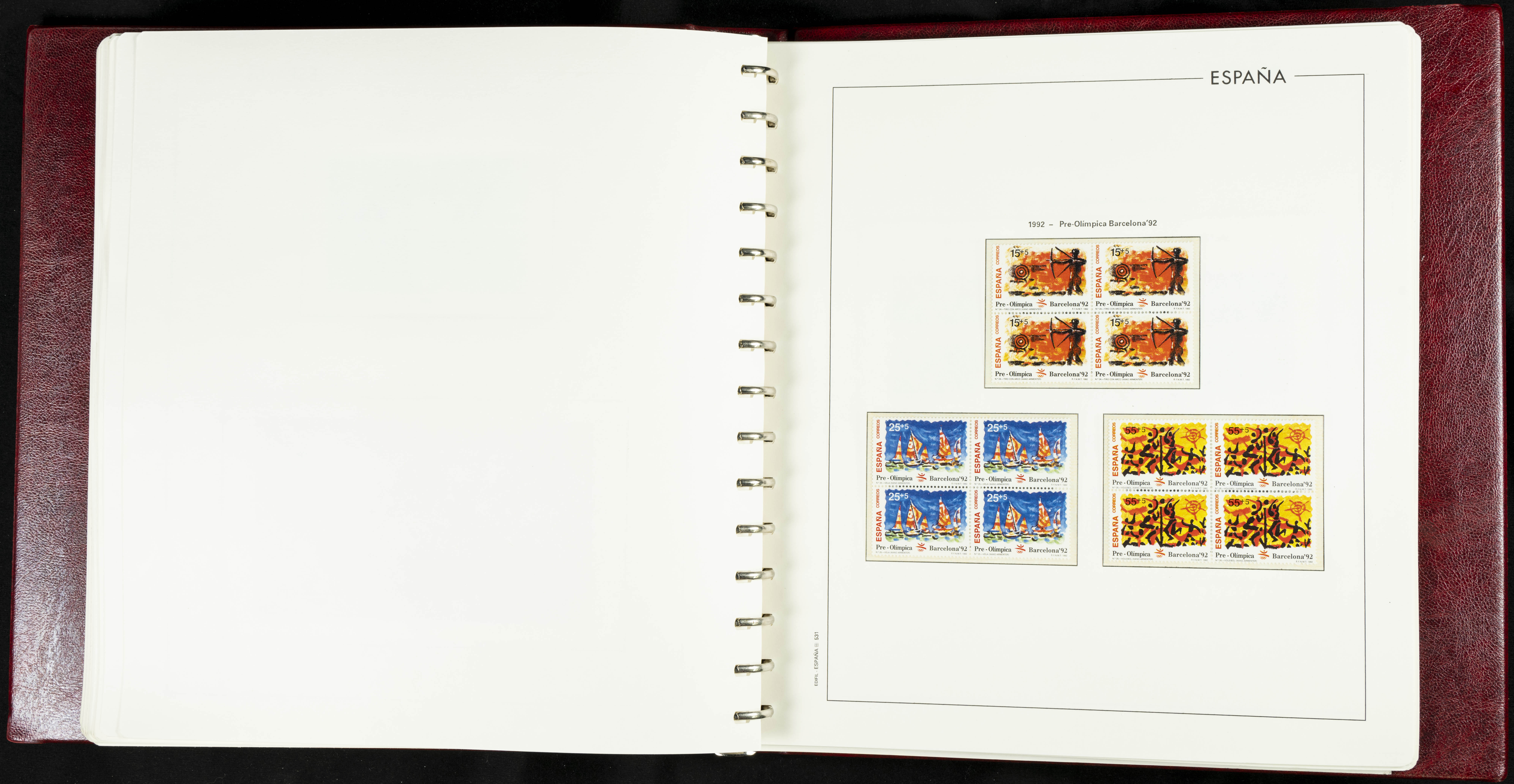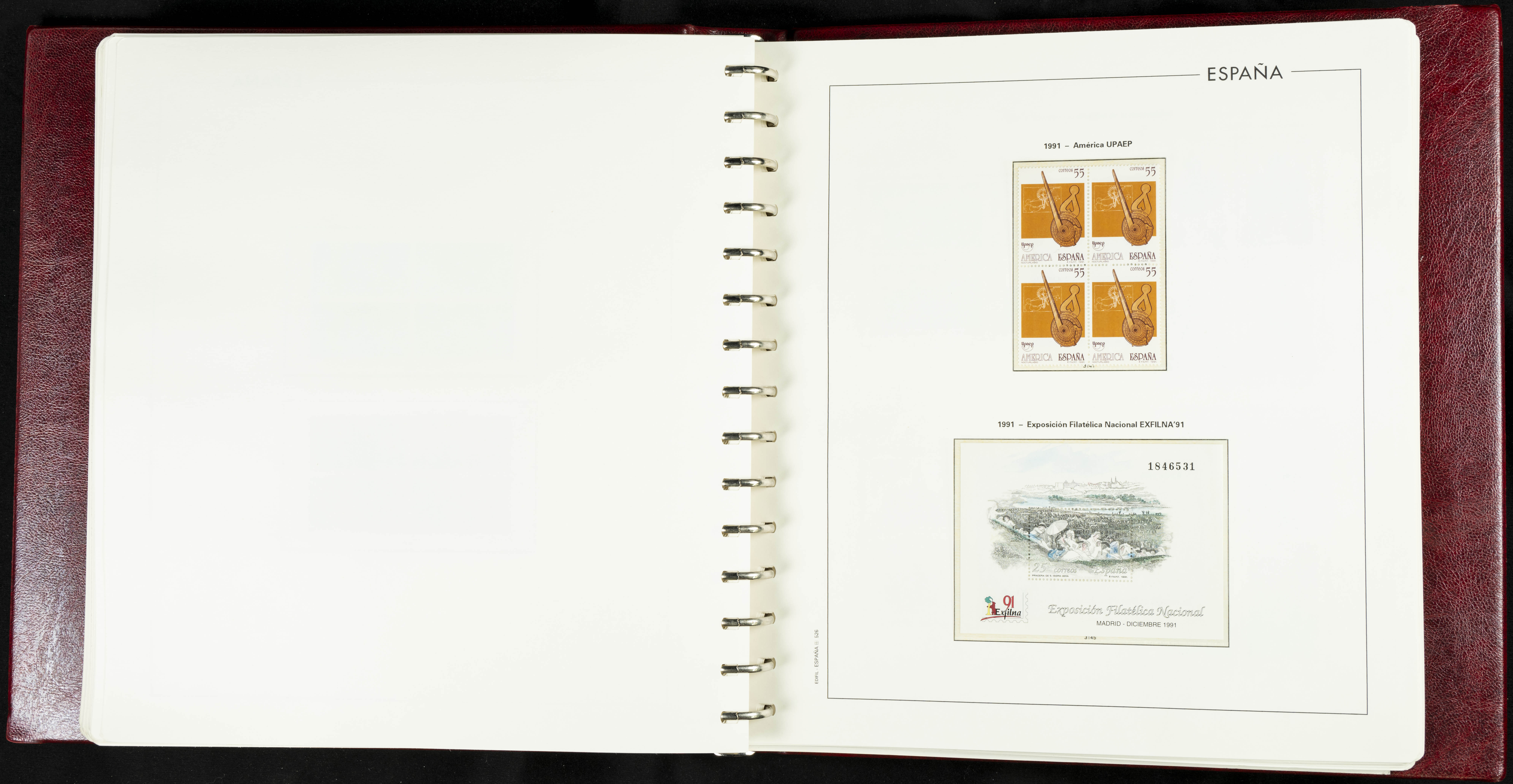 ★★(1976ca). Complete collection between 1976 and 1999, including the 2000 portion denominated exclusively in pesetas, in blocks of four (with a souvenir sheet), in mint condition (mounted in albums). HIGH CATALOGUE VALUE. TO BE EXAMINED.