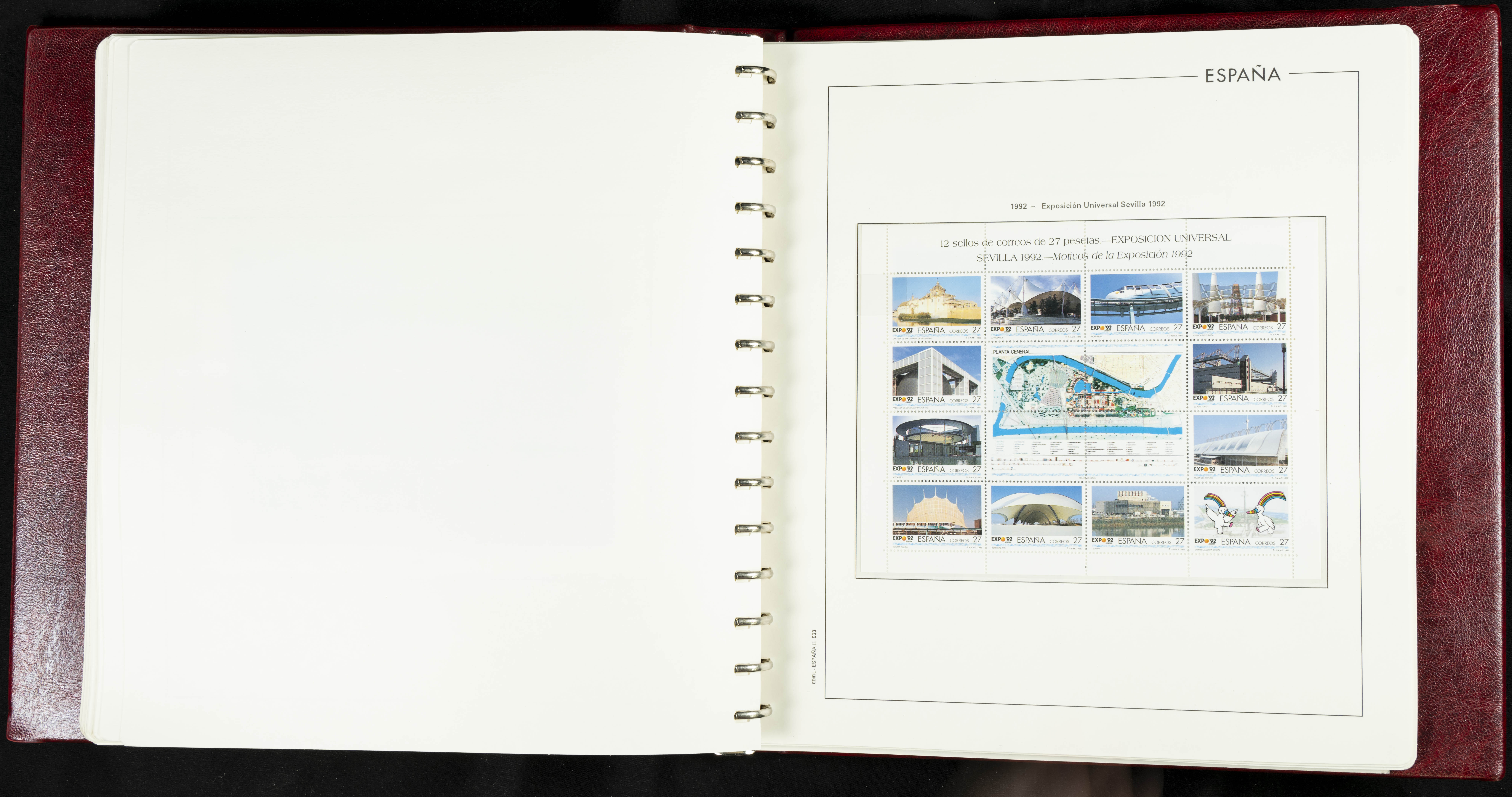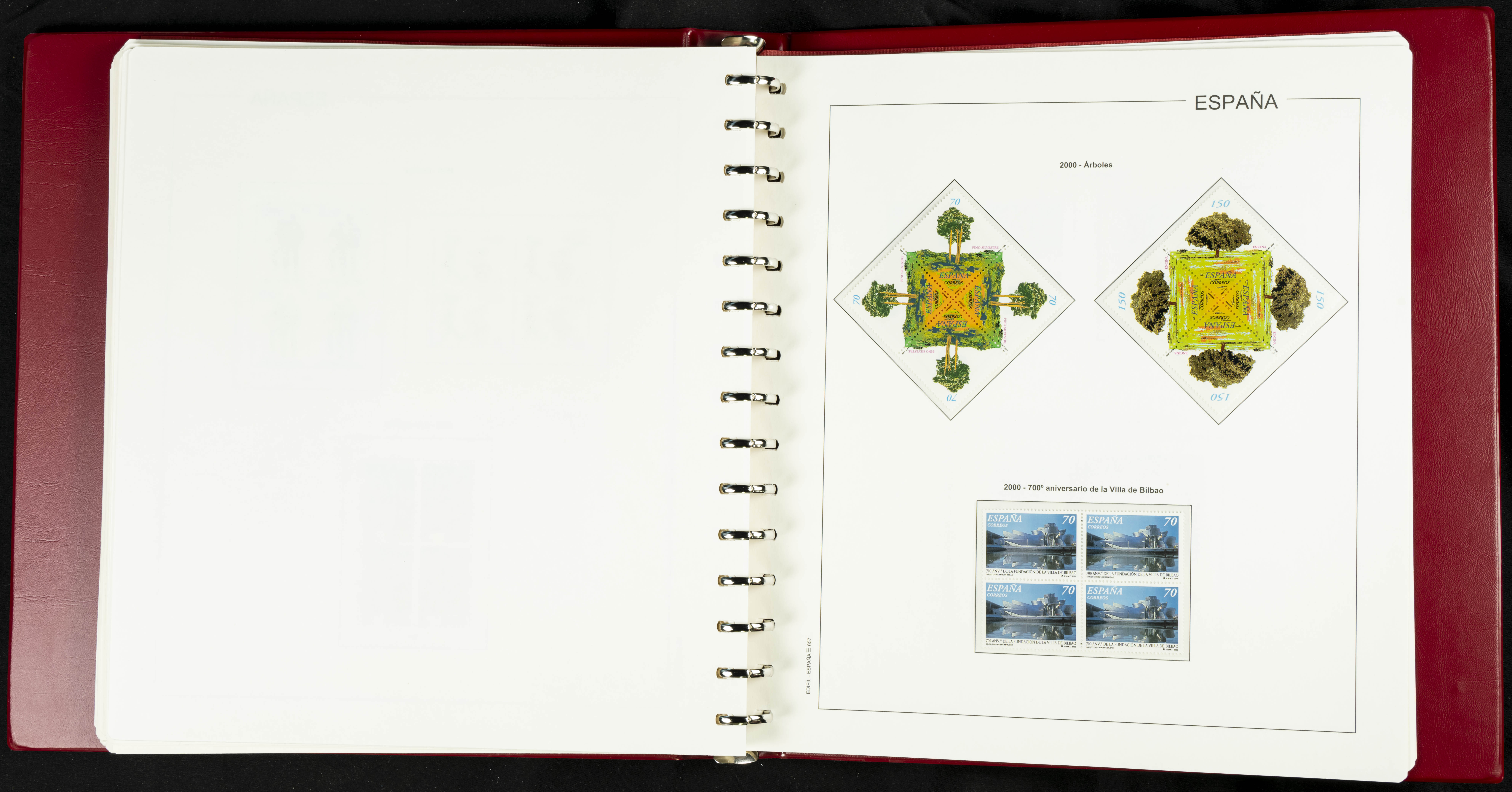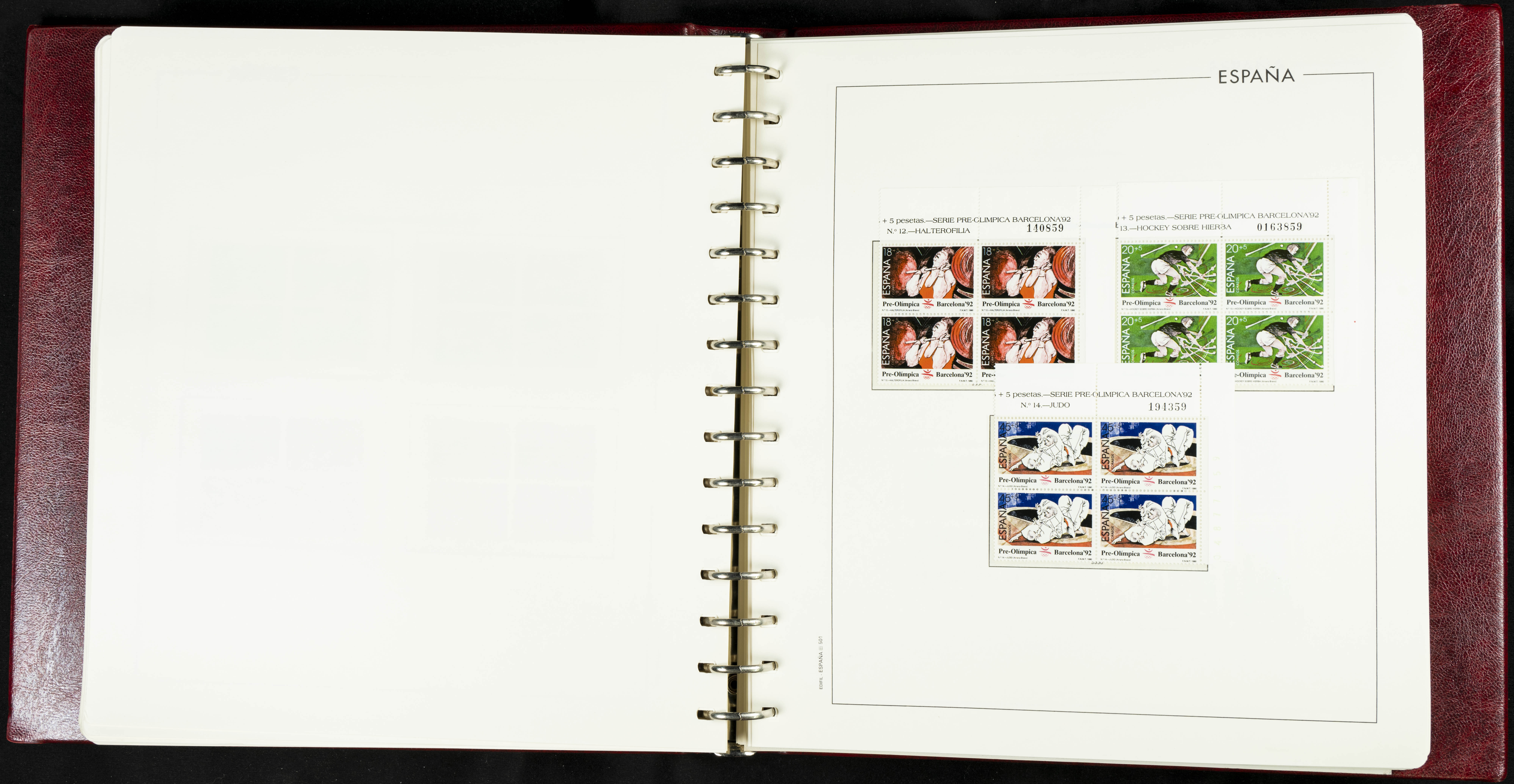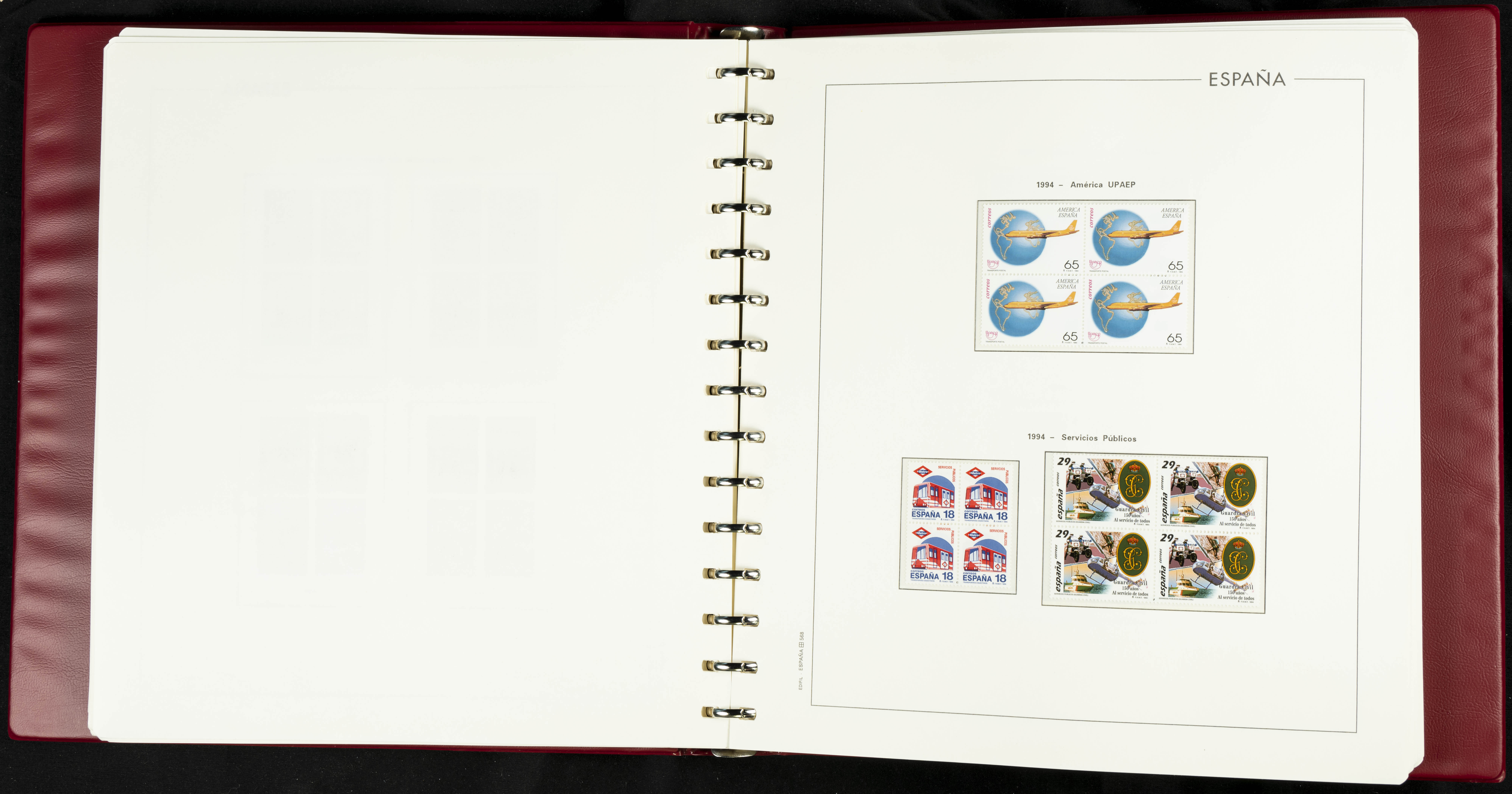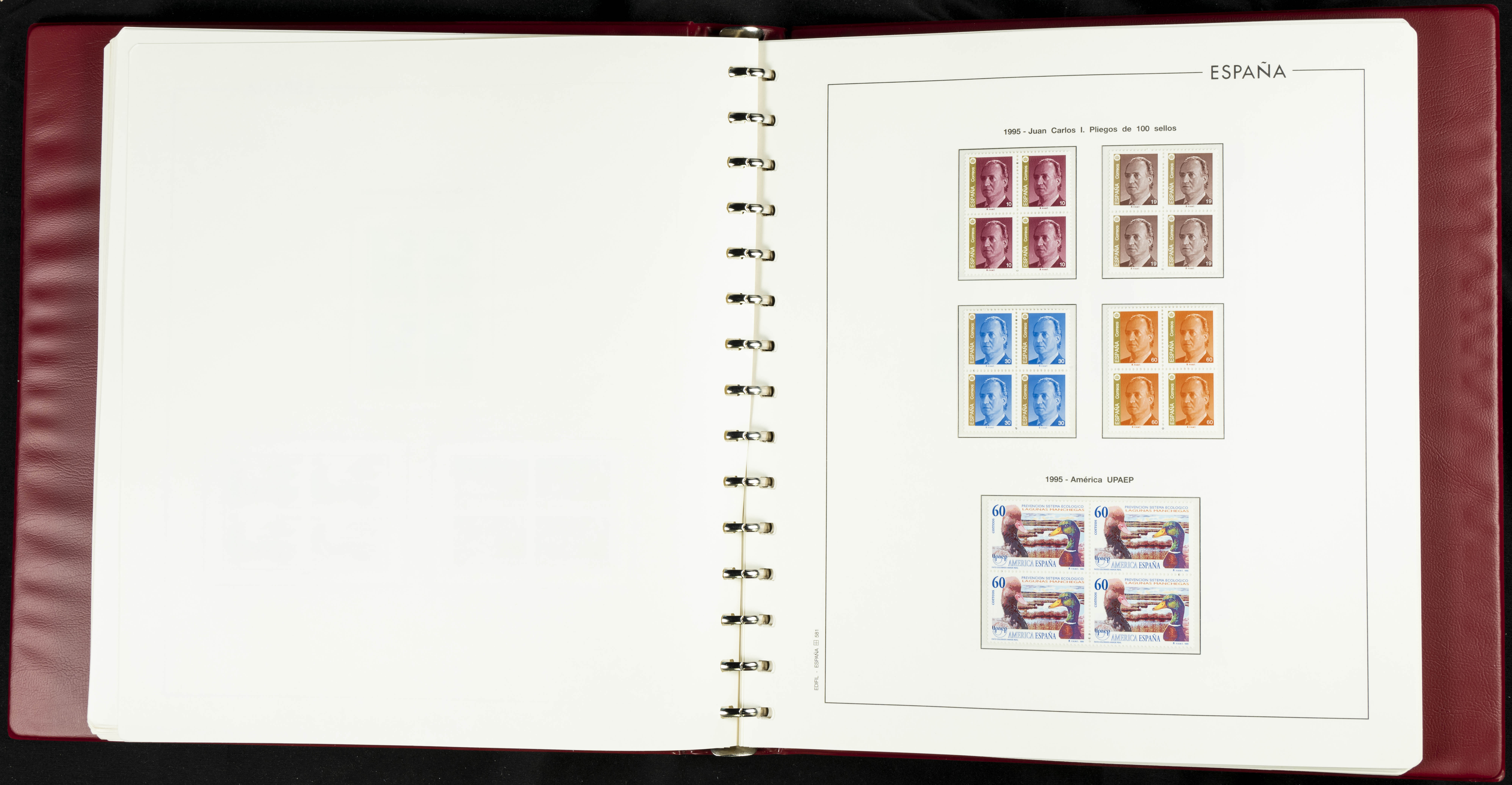 ★★(1976ca). Complete collection between 1976 and 1999, including the 2000 portion denominated exclusively in pesetas, in blocks of four (with a souvenir sheet), in mint condition (mounted in albums). HIGH CATALOGUE VALUE. TO BE EXAMINED.