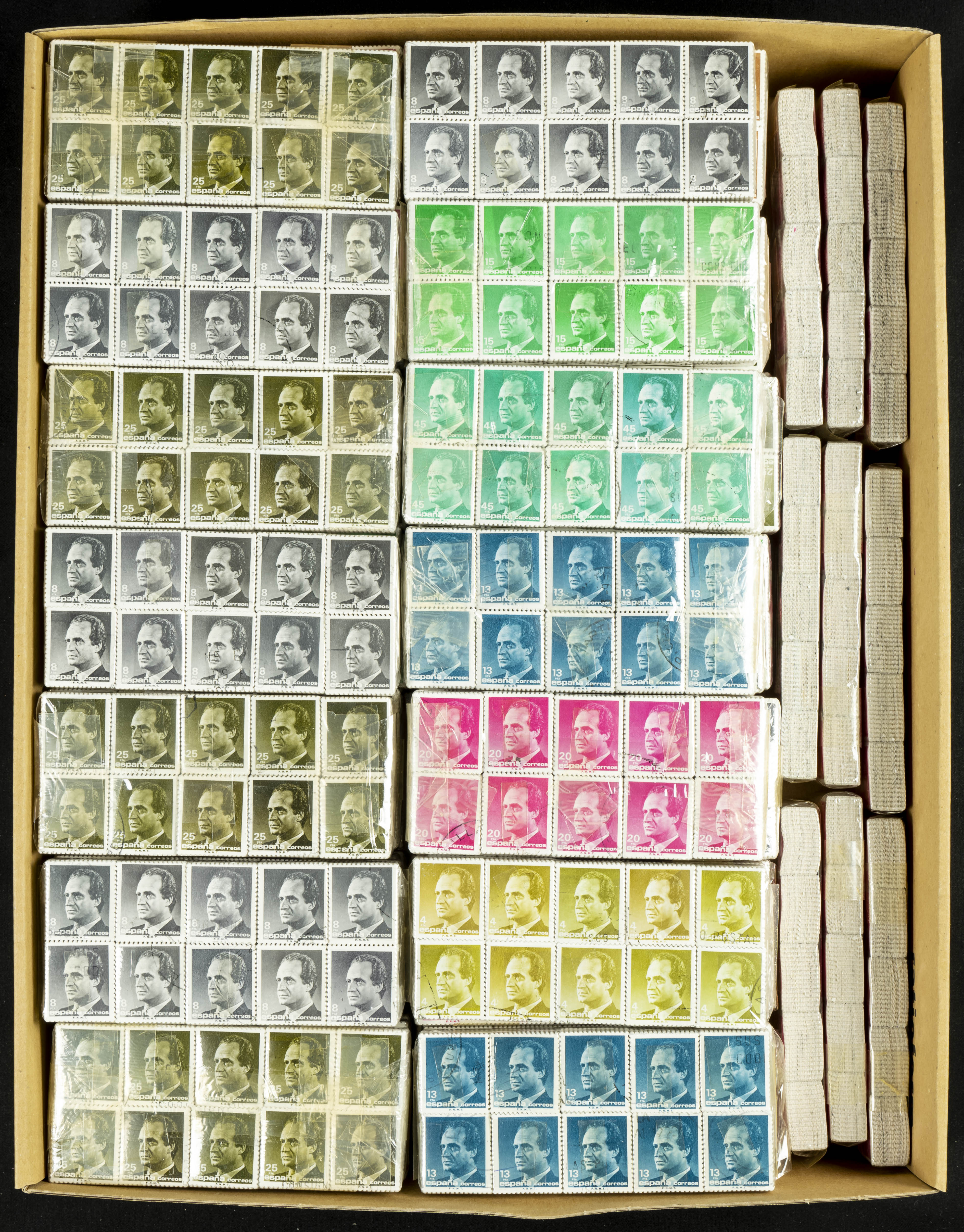 (1985ca). Collection of more than seventy-five thousand stamps of various values from the basic issue of Juan Carlos I (1985 onwards), in used condition (mounted in packs of one thousand units). TO BE EXAMINED.