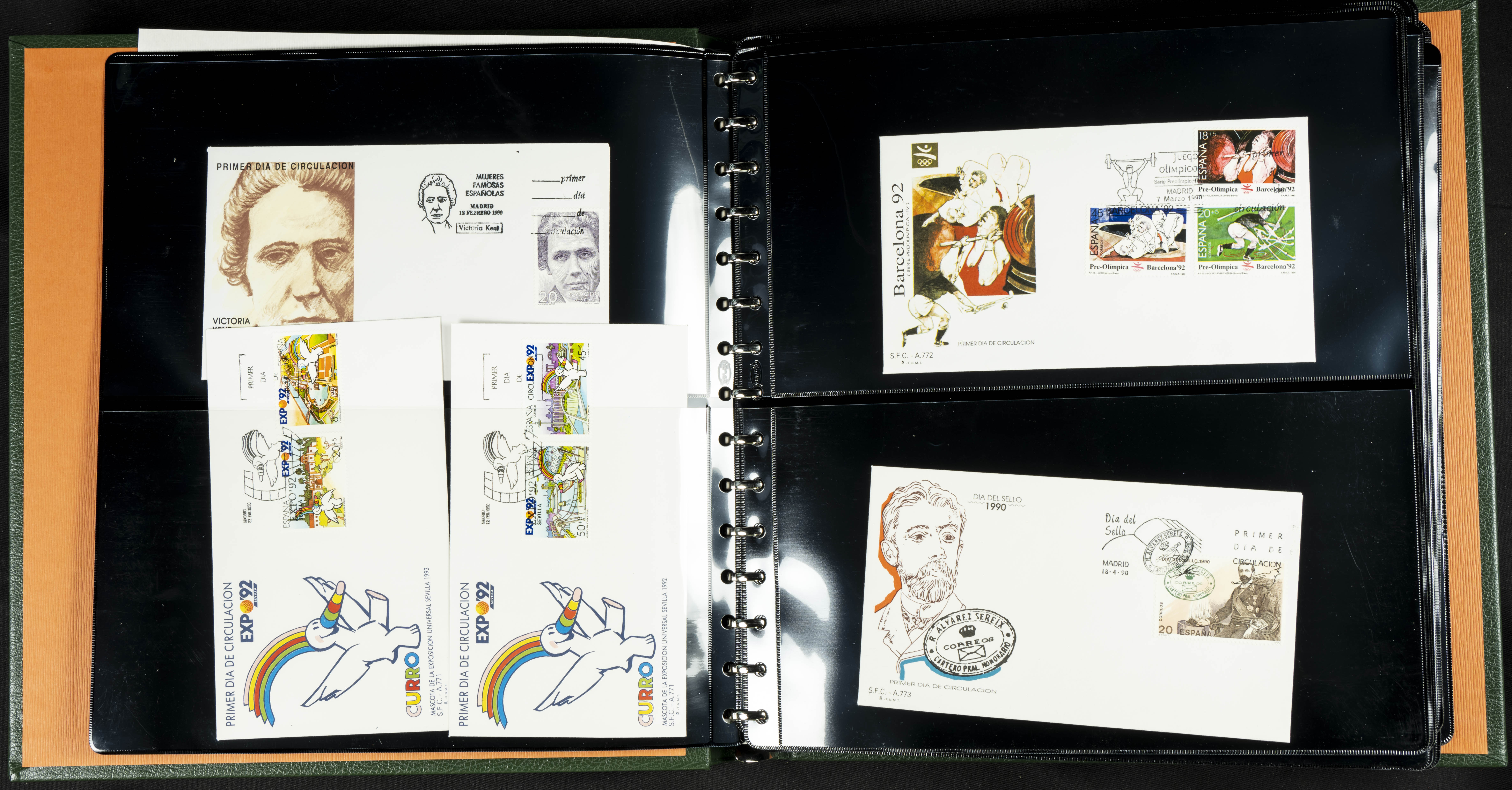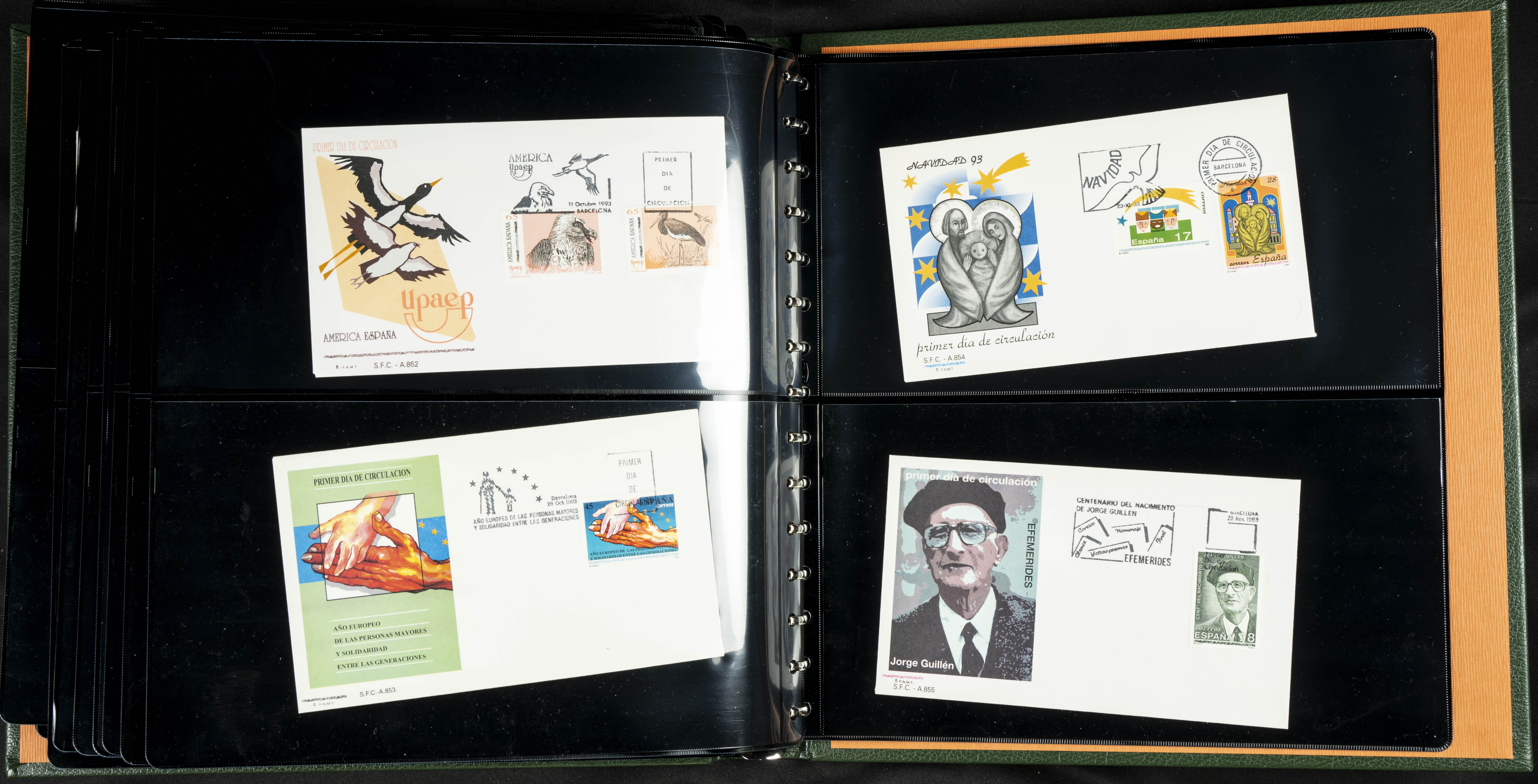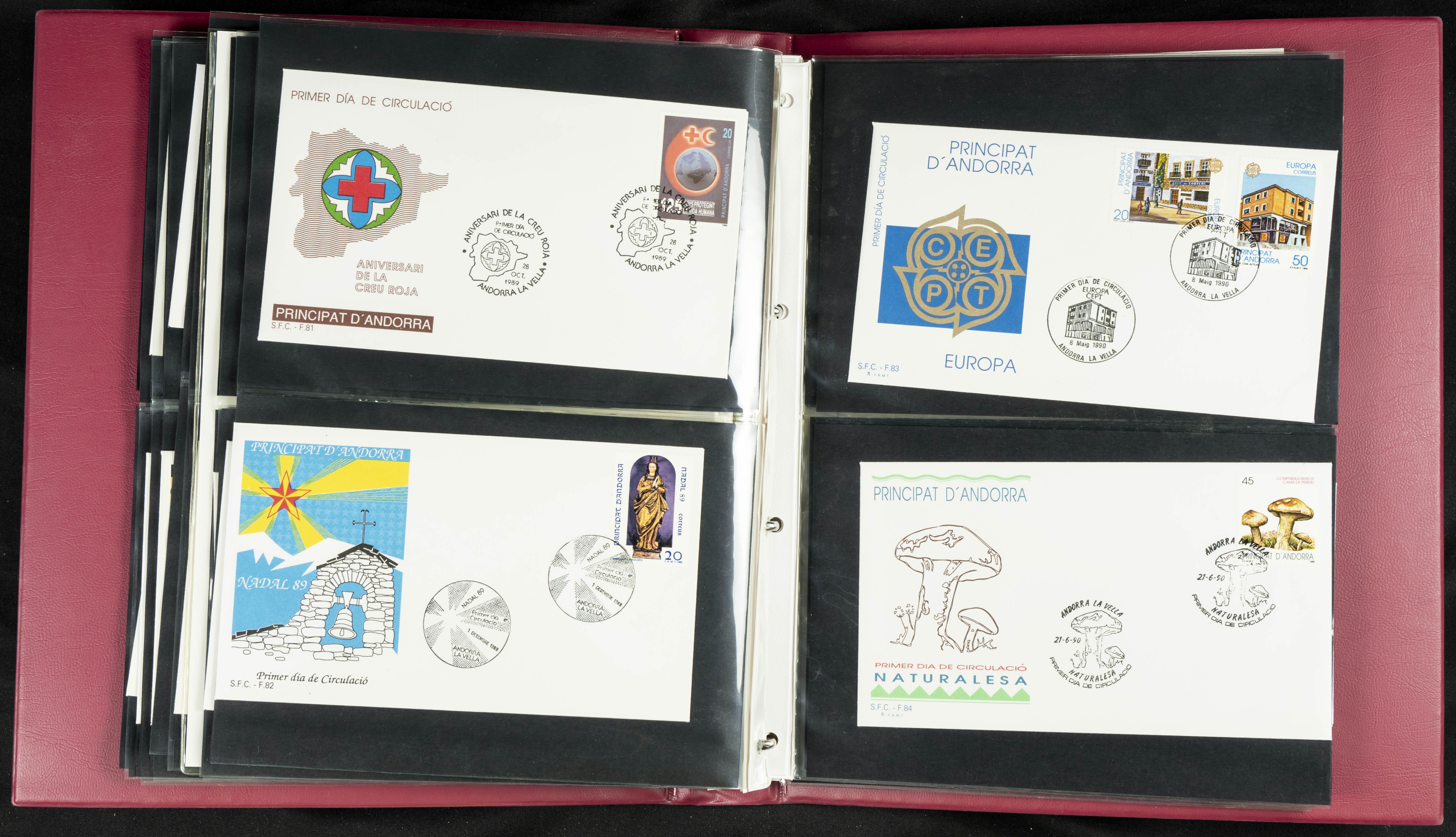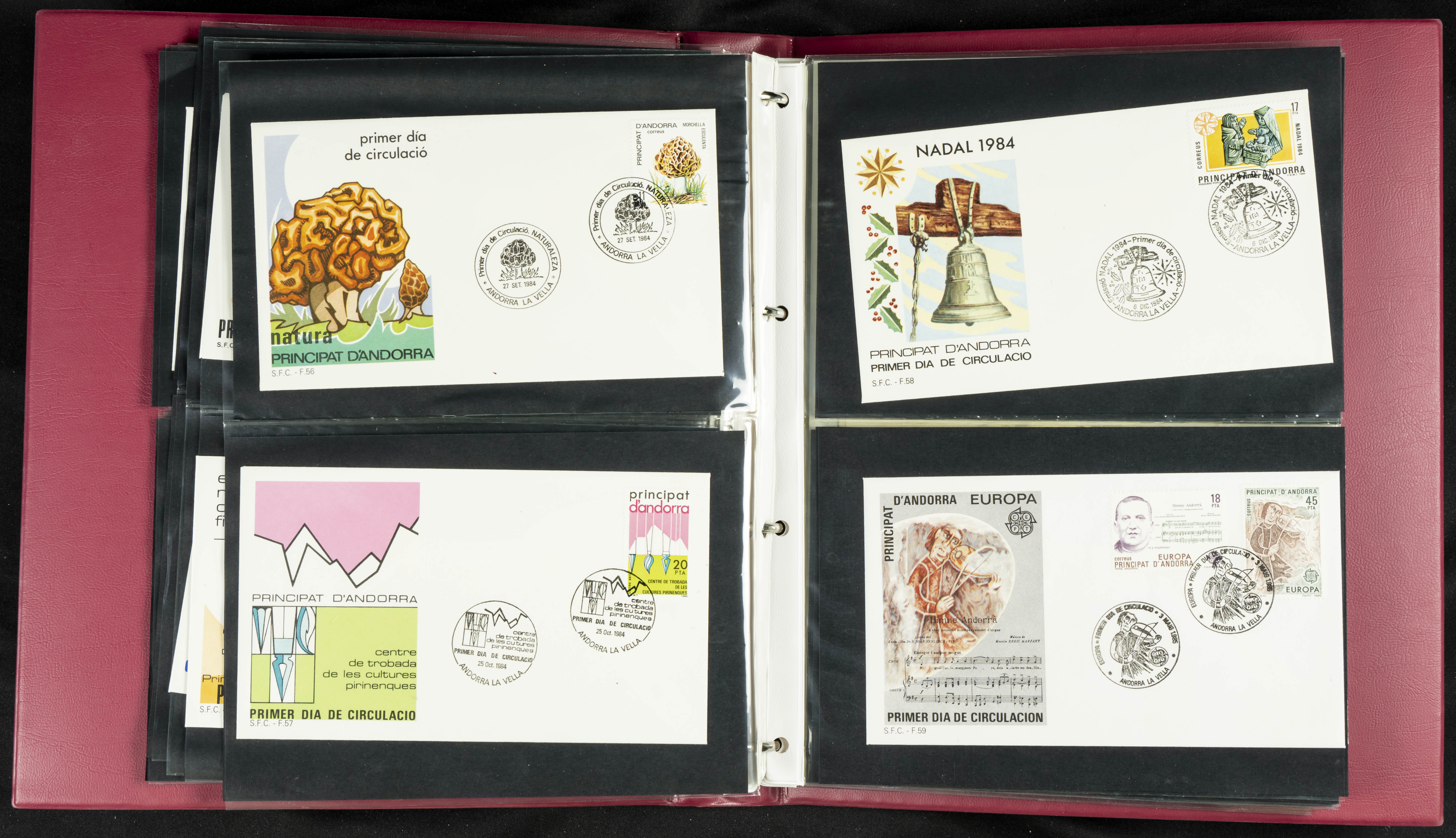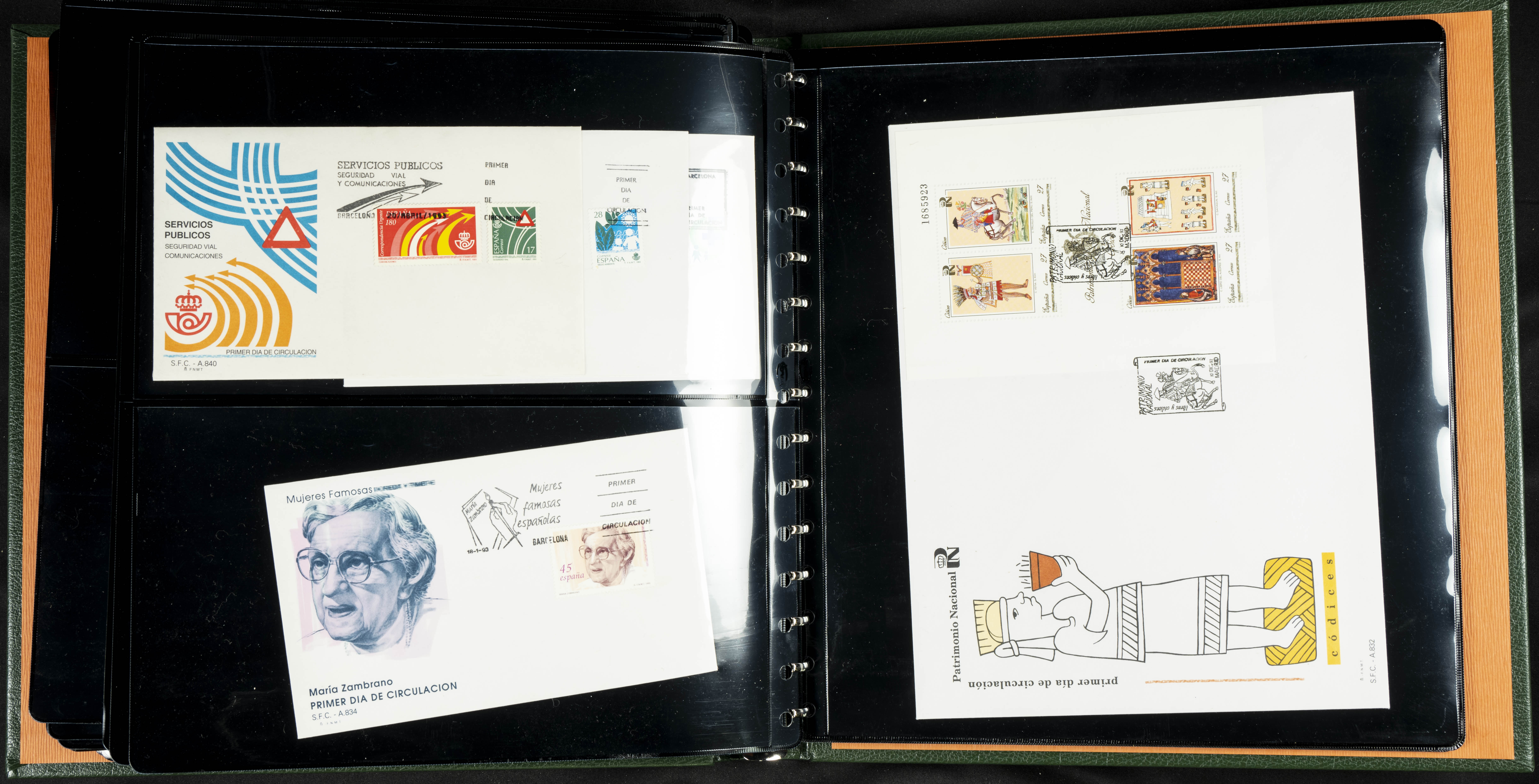 English (1990ca). Collection of First Day Covers between 1990 and 2001, includes large formats, some covers from previous years (Suits and World Cup 82) and Spanish Andorra between 1980 and 1994. TO BE EXAMINED.