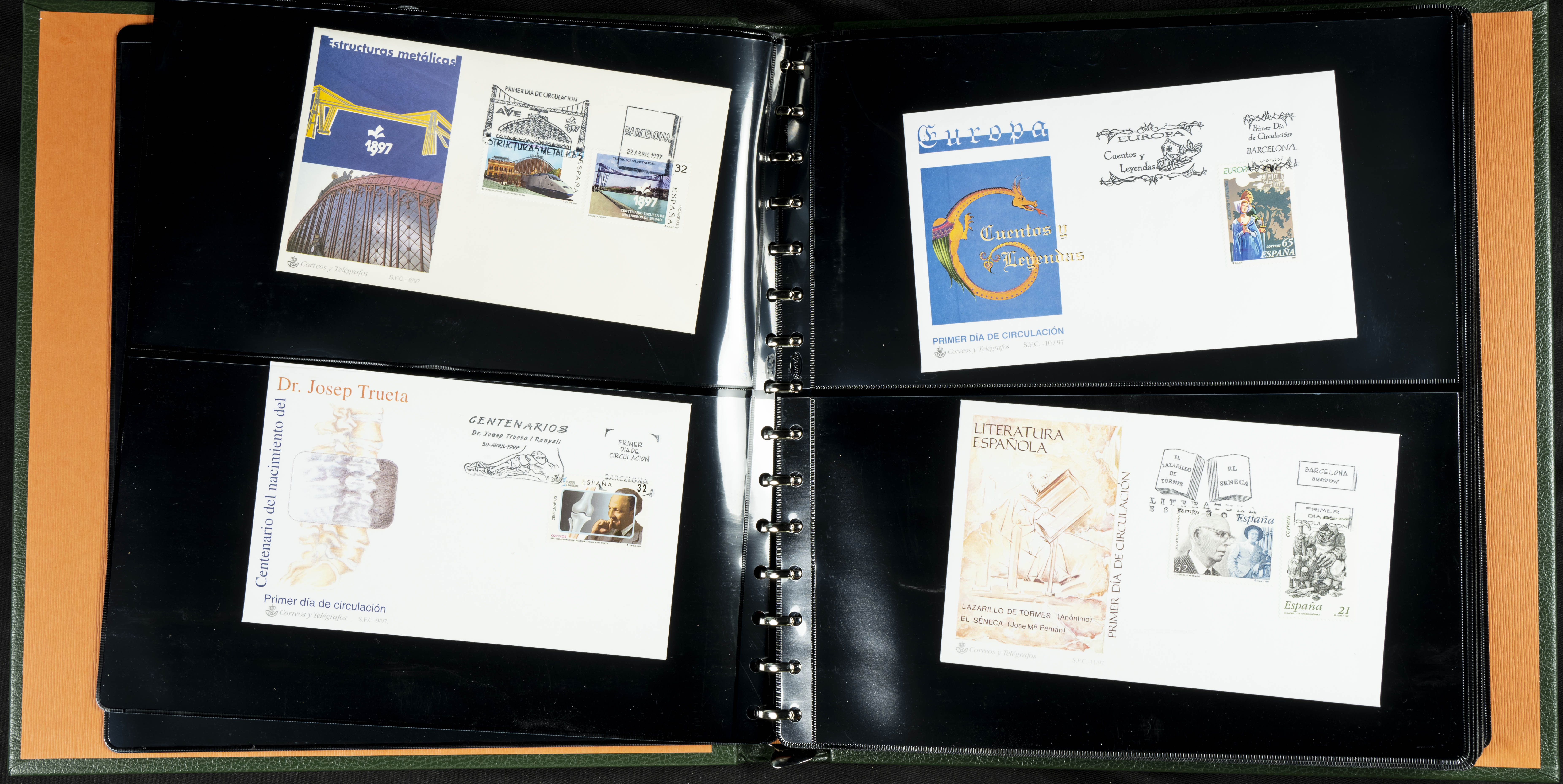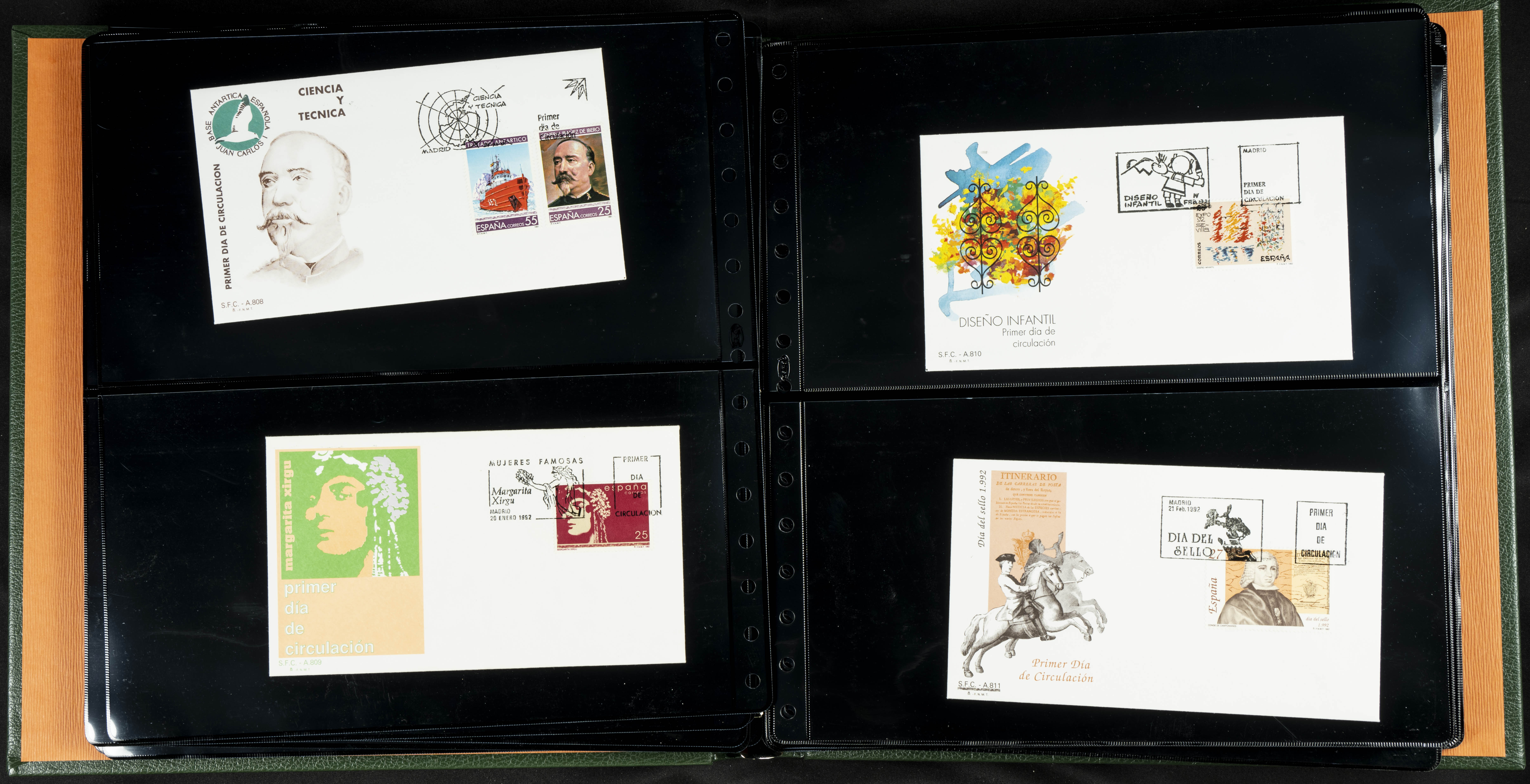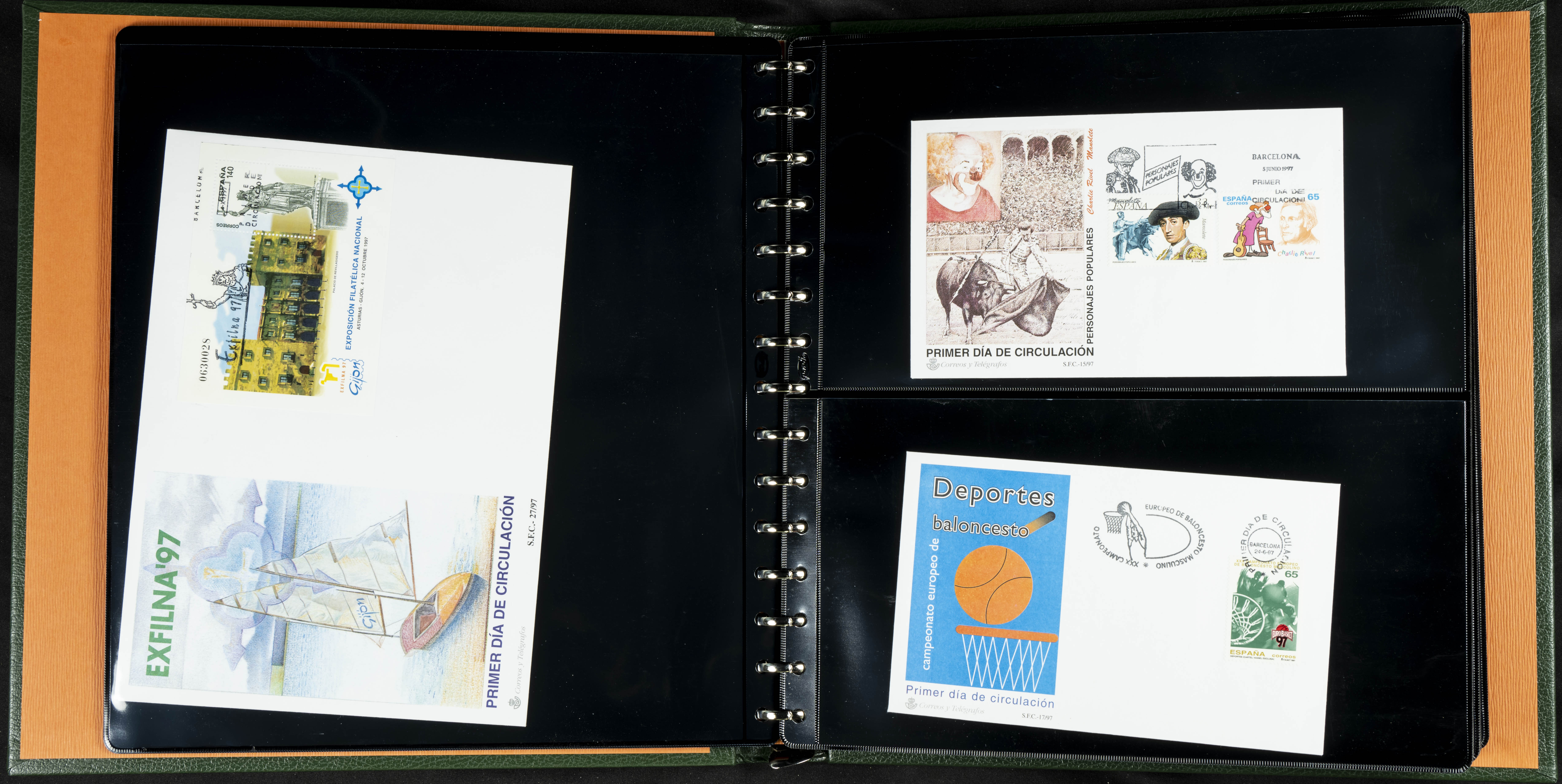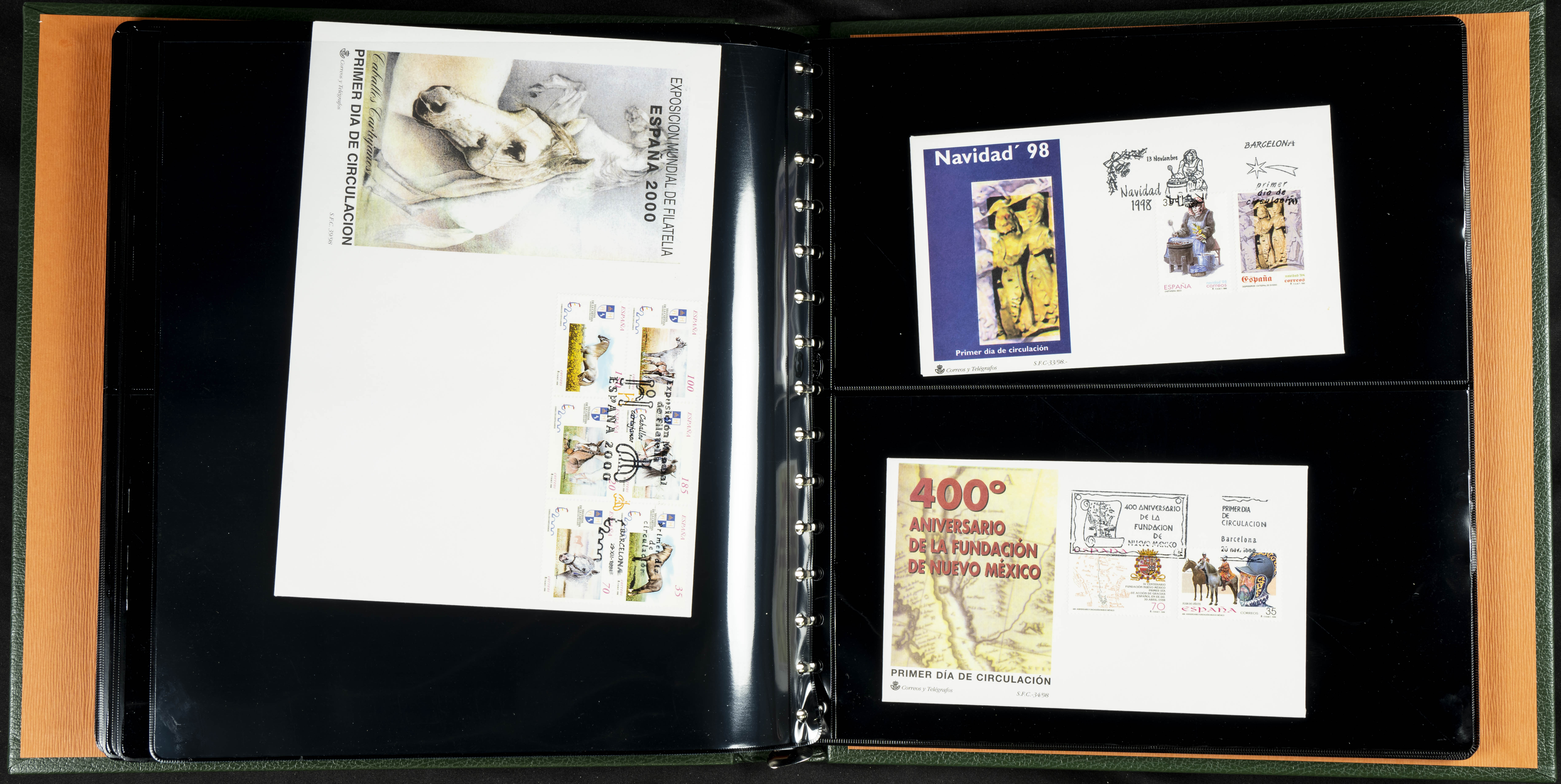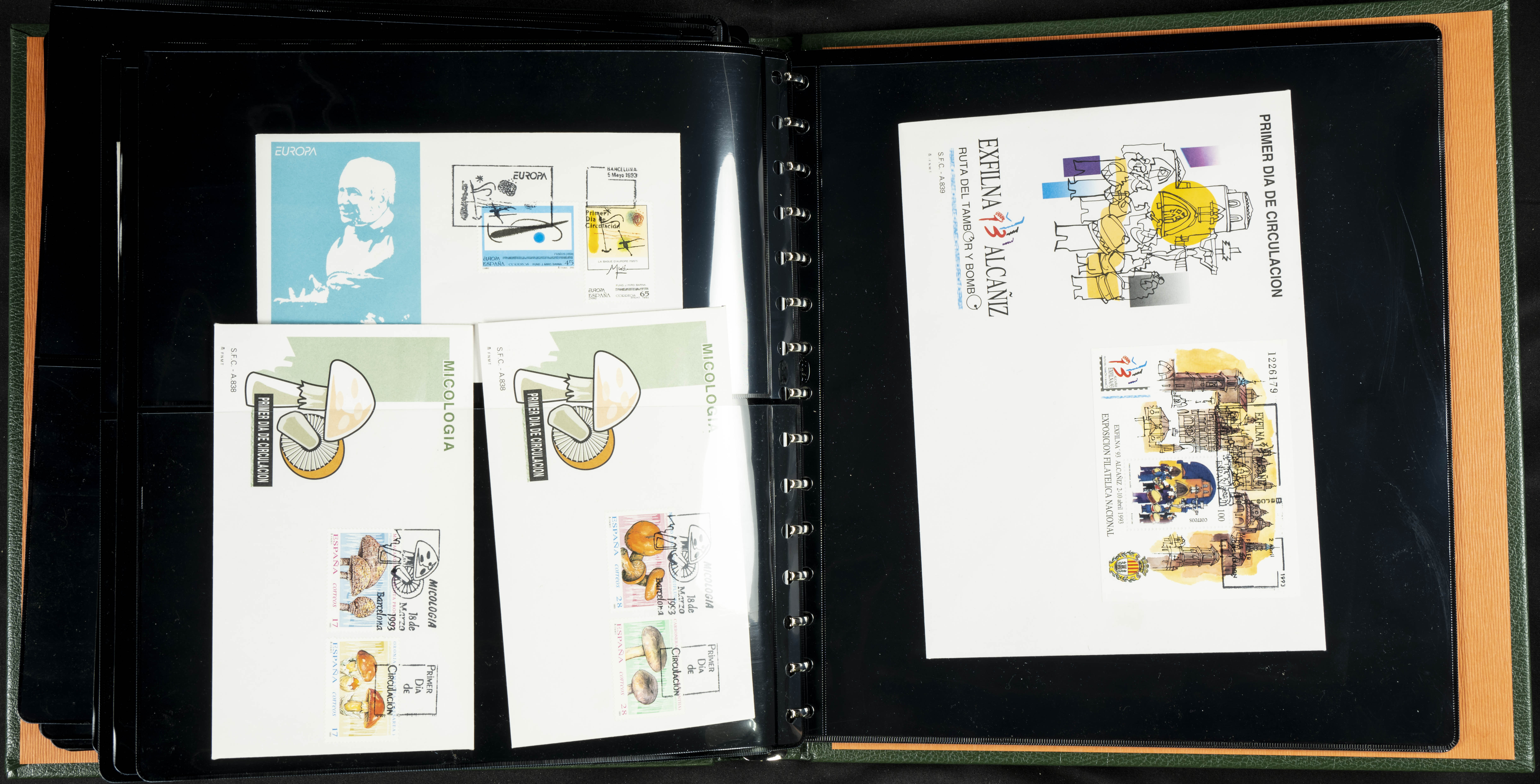 English (1990ca). Collection of First Day Covers between 1990 and 2001, includes large formats, some covers from previous years (Suits and World Cup 82) and Spanish Andorra between 1980 and 1994. TO BE EXAMINED.