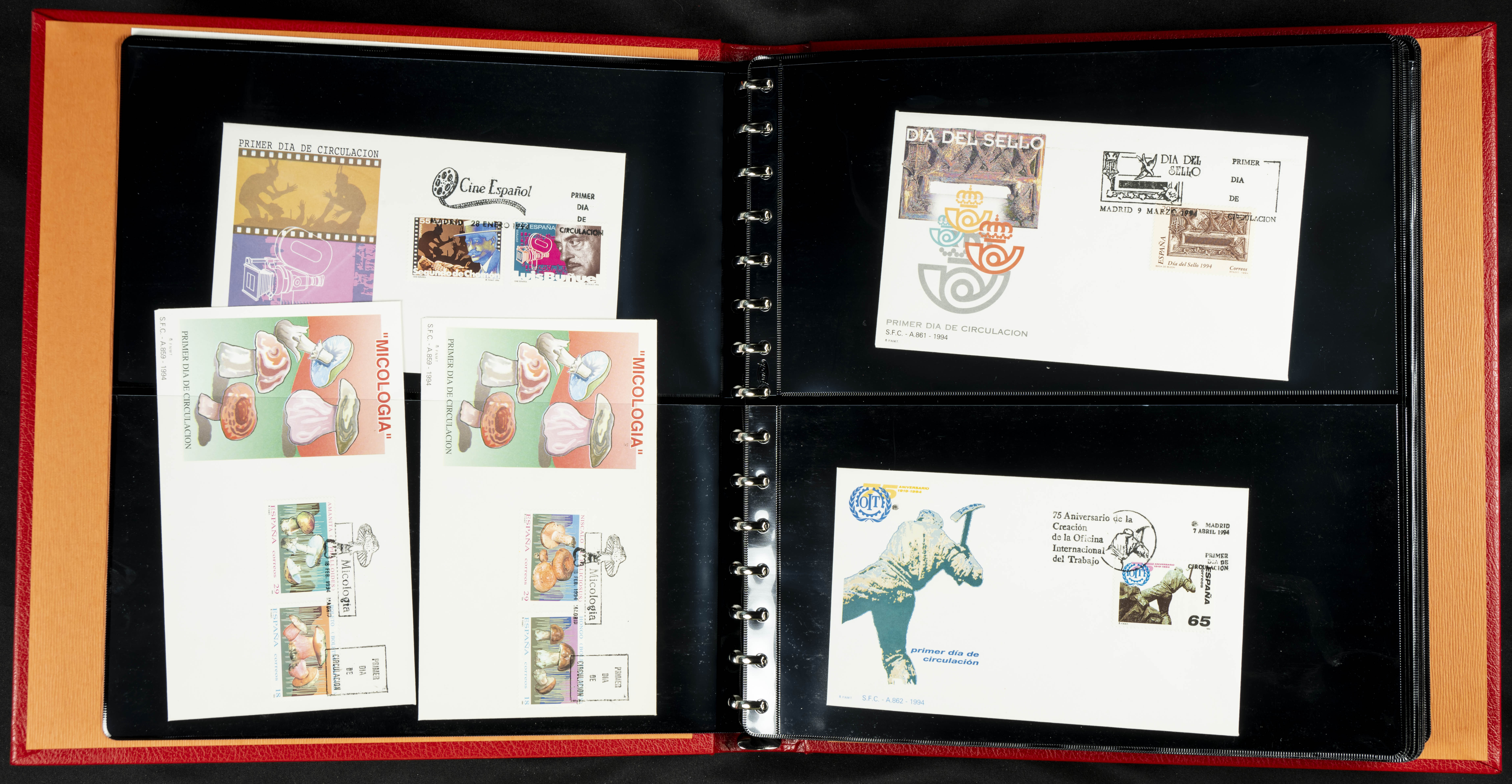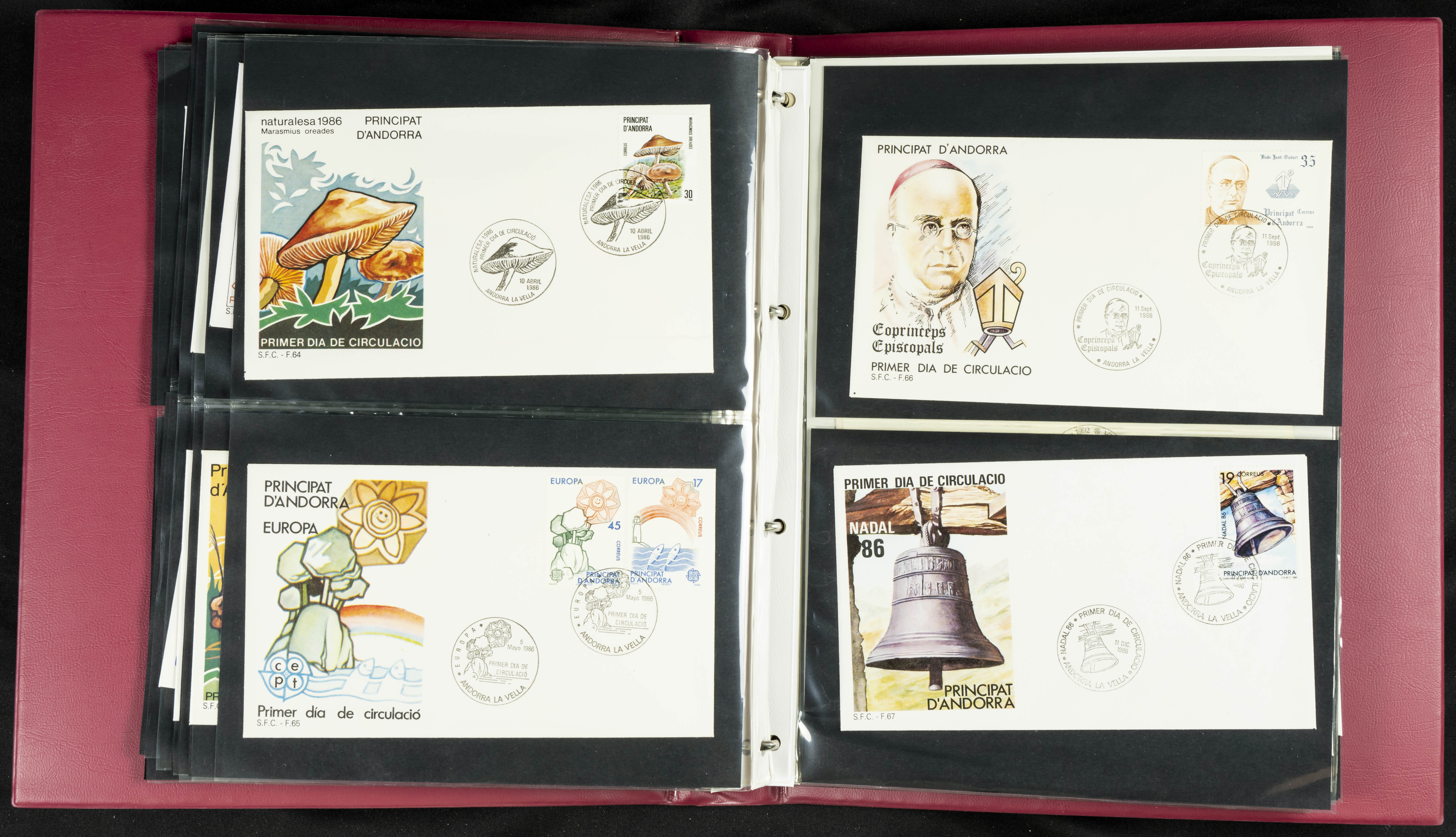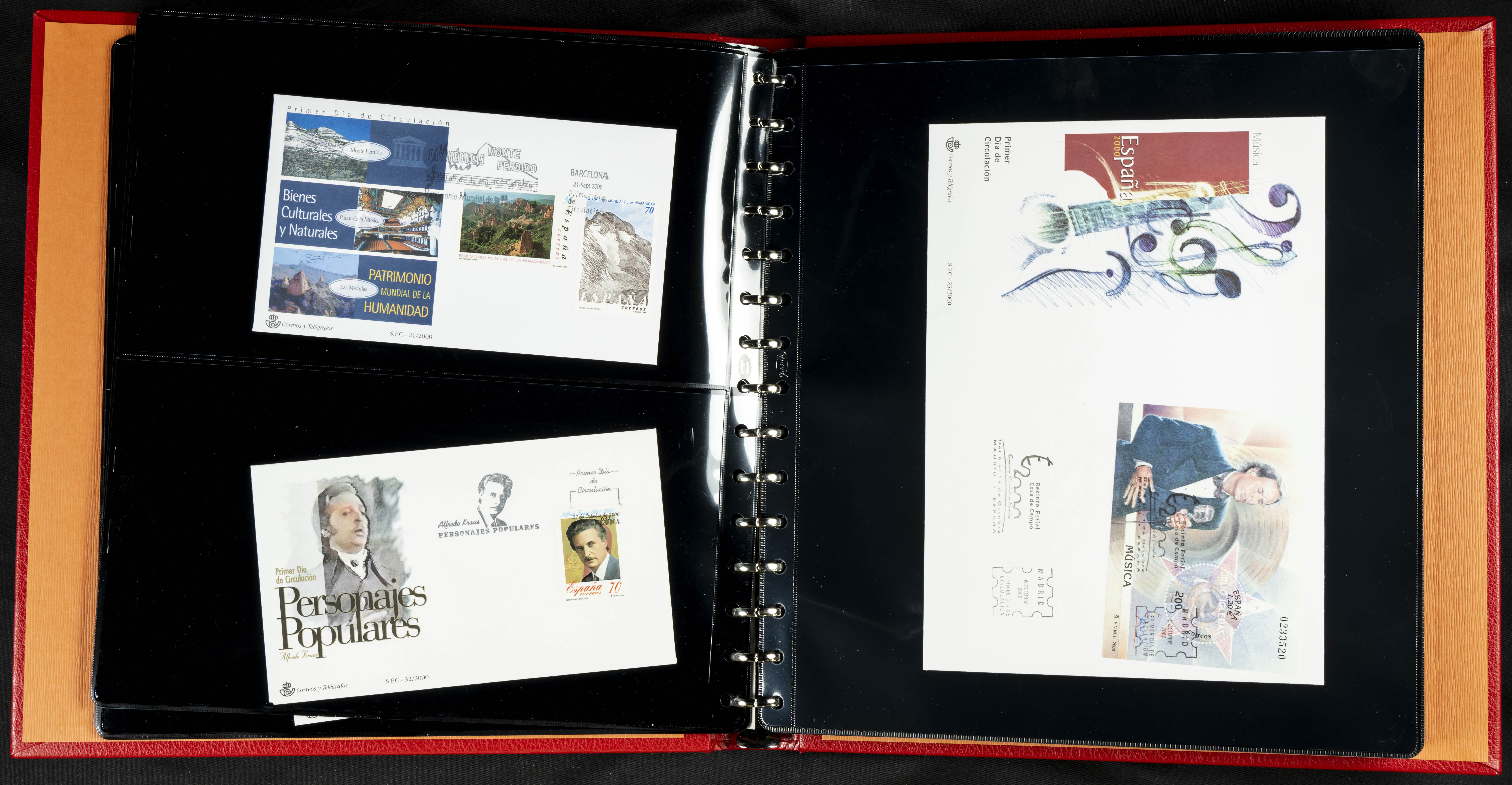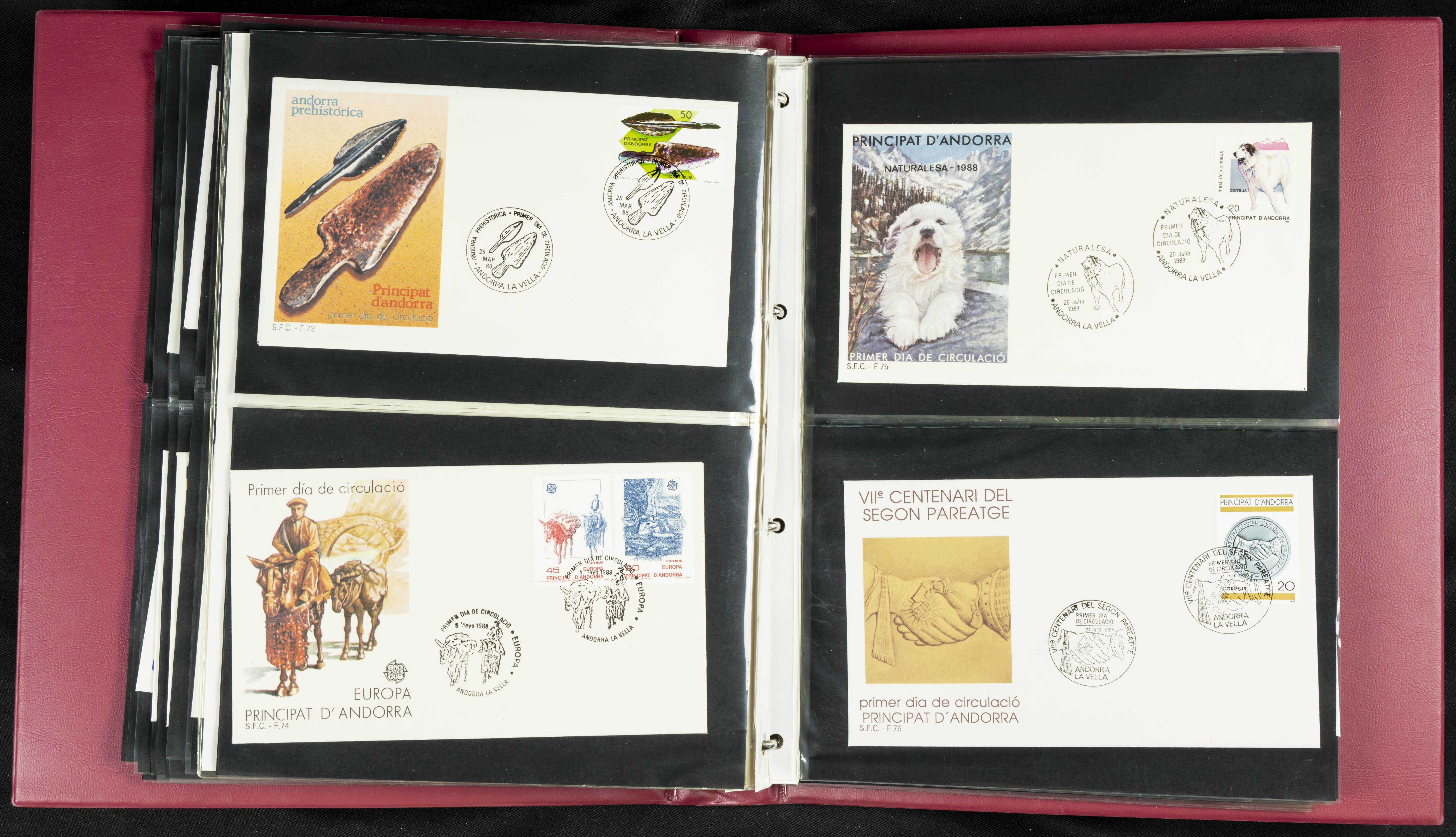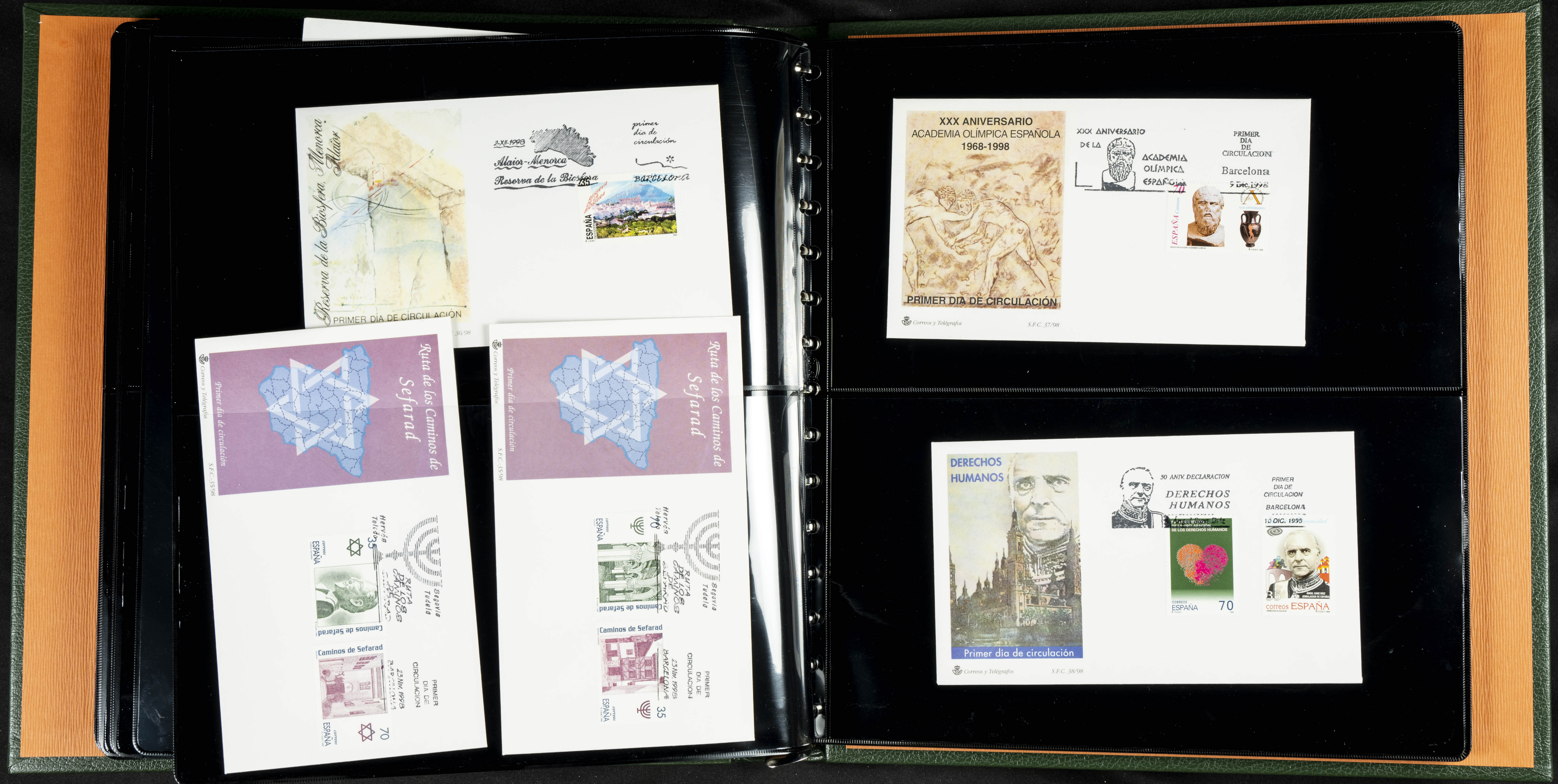 English (1990ca). Collection of First Day Covers between 1990 and 2001, includes large formats, some covers from previous years (Suits and World Cup 82) and Spanish Andorra between 1980 and 1994. TO BE EXAMINED.