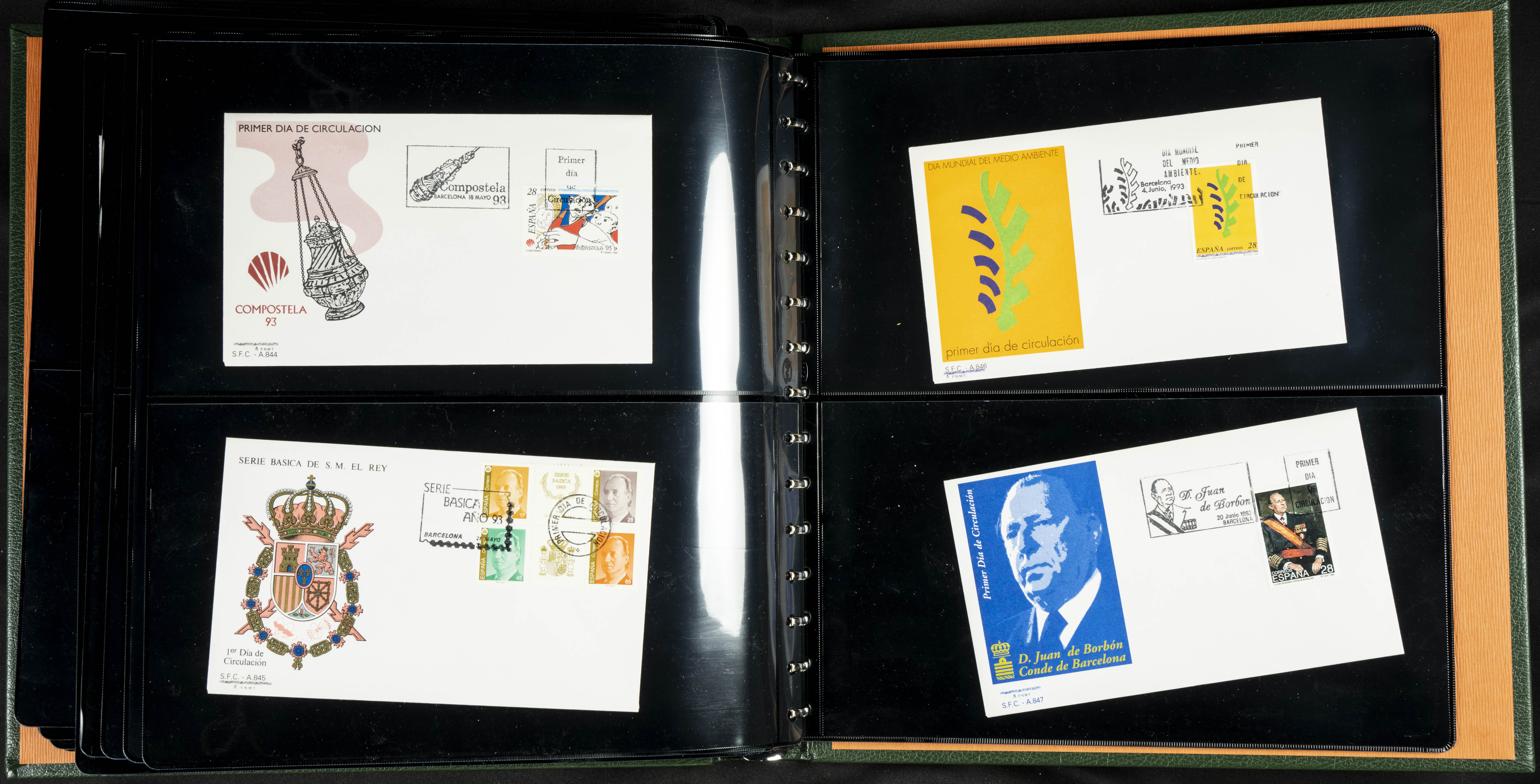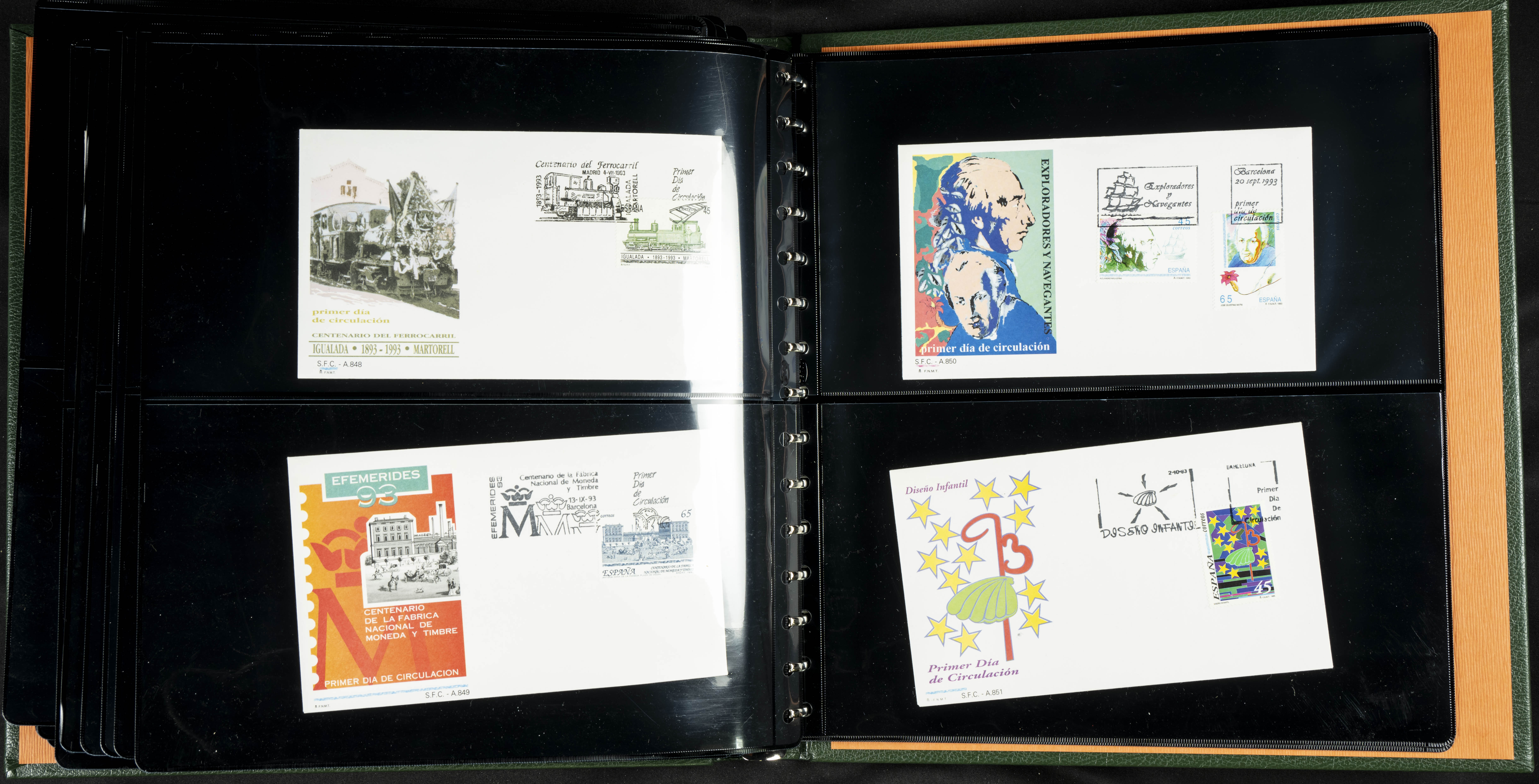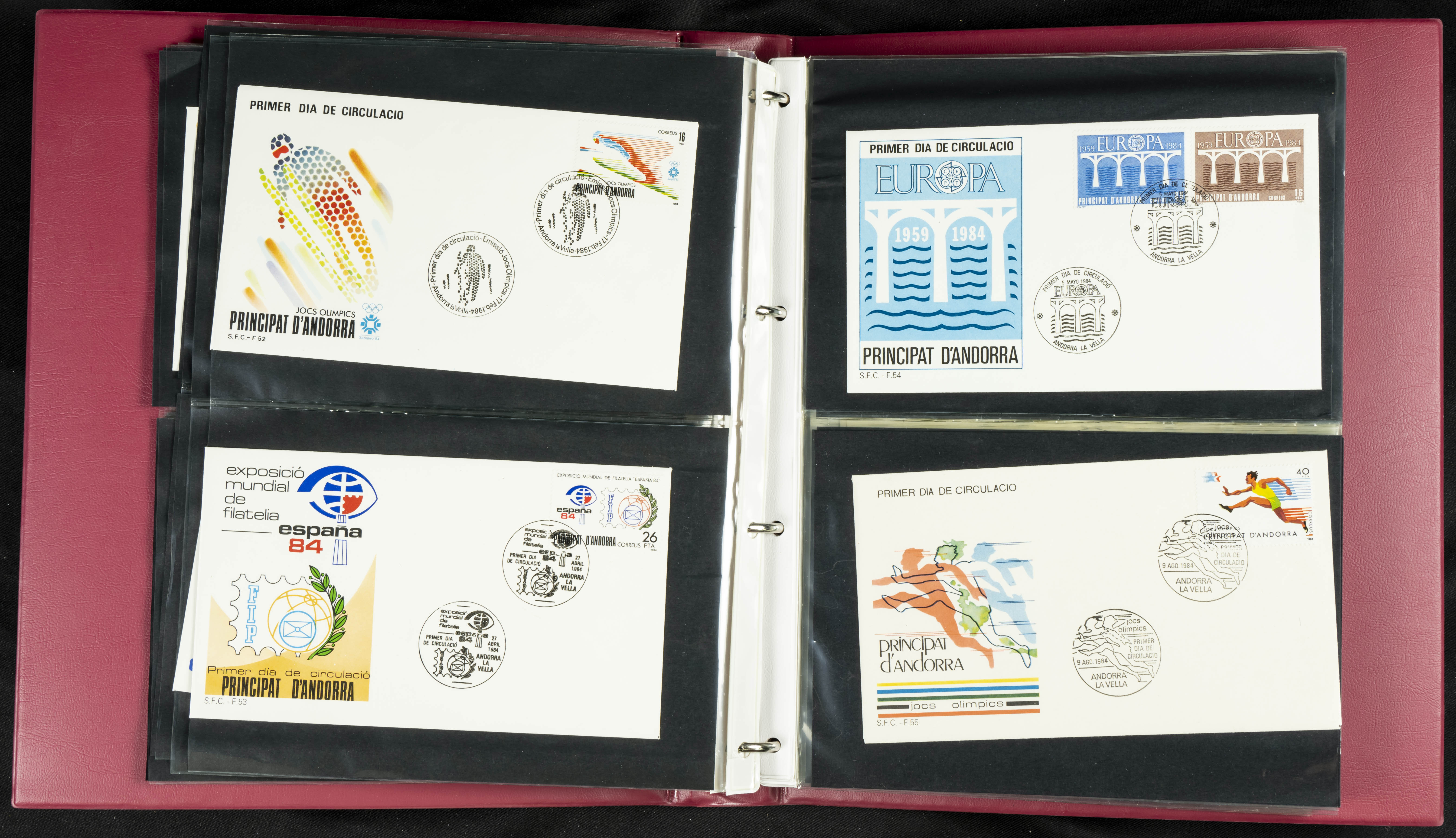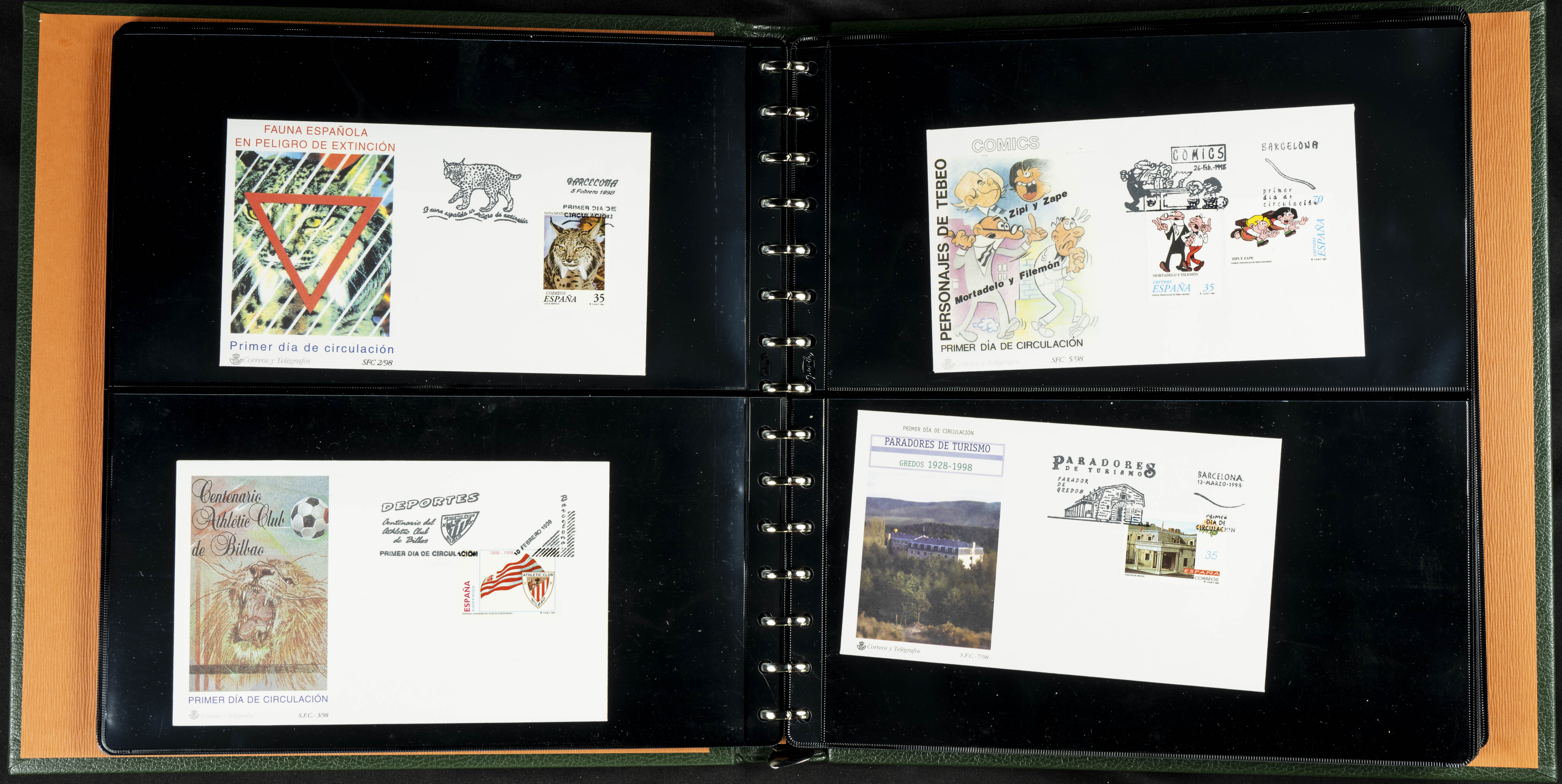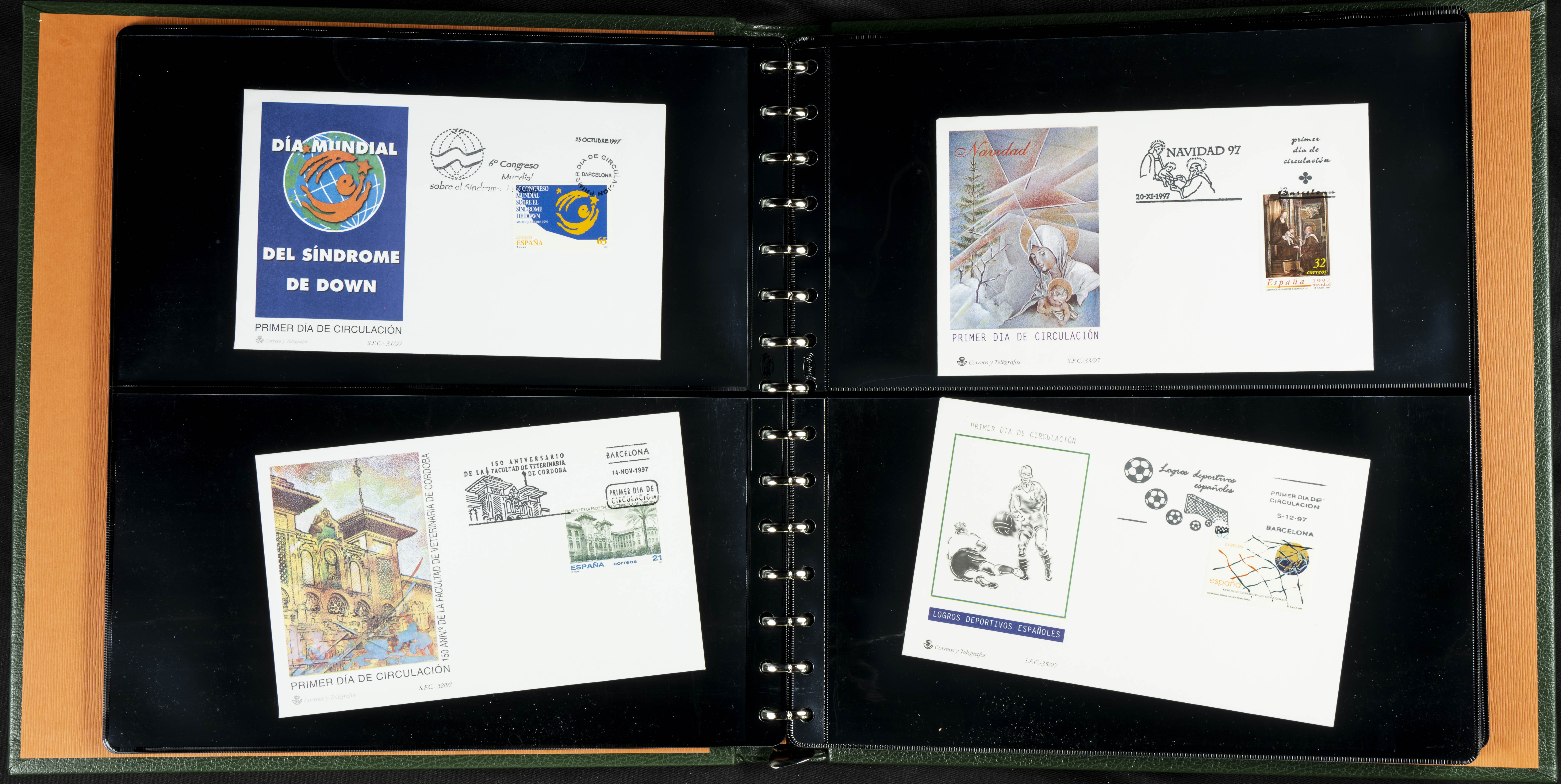 English (1990ca). Collection of First Day Covers between 1990 and 2001, includes large formats, some covers from previous years (Suits and World Cup 82) and Spanish Andorra between 1980 and 1994. TO BE EXAMINED.